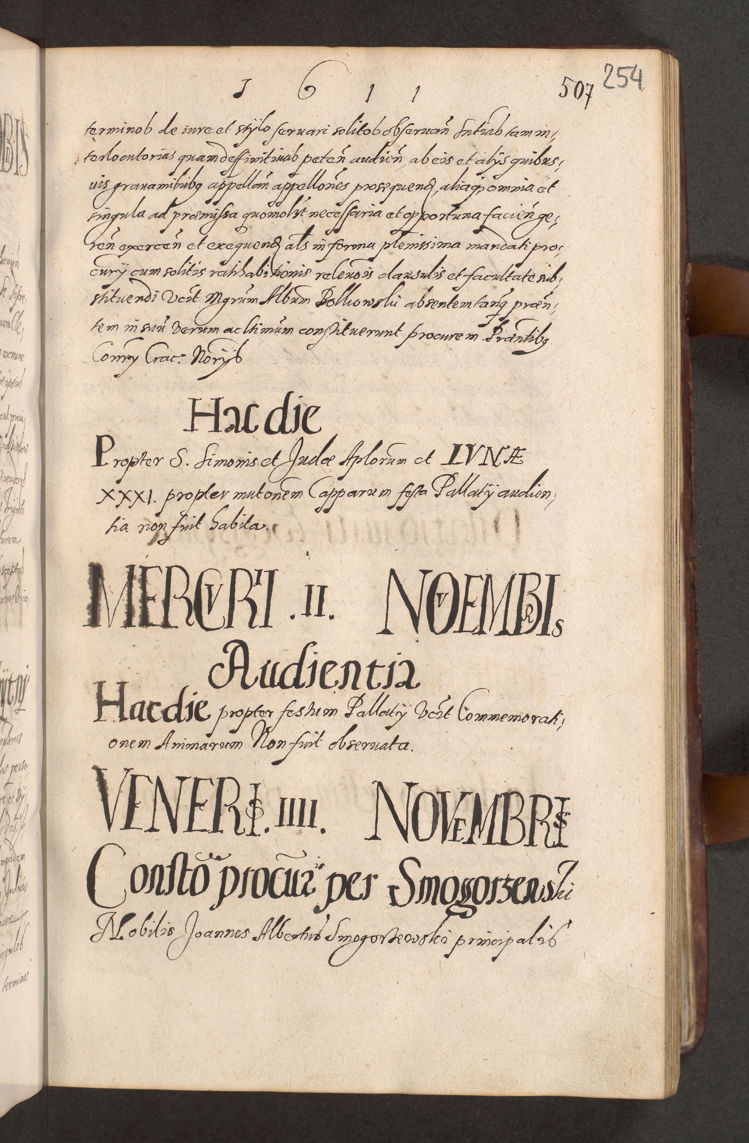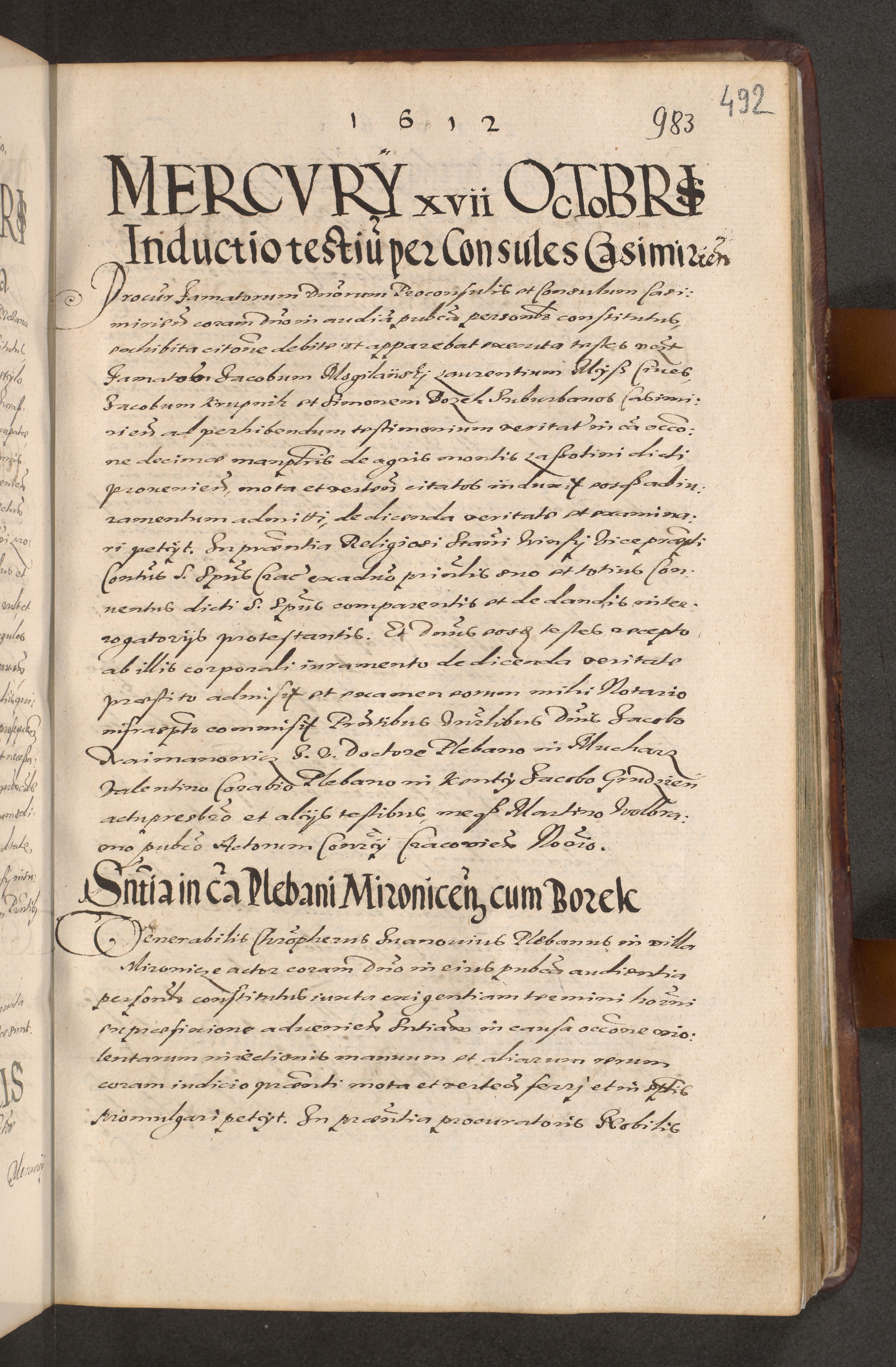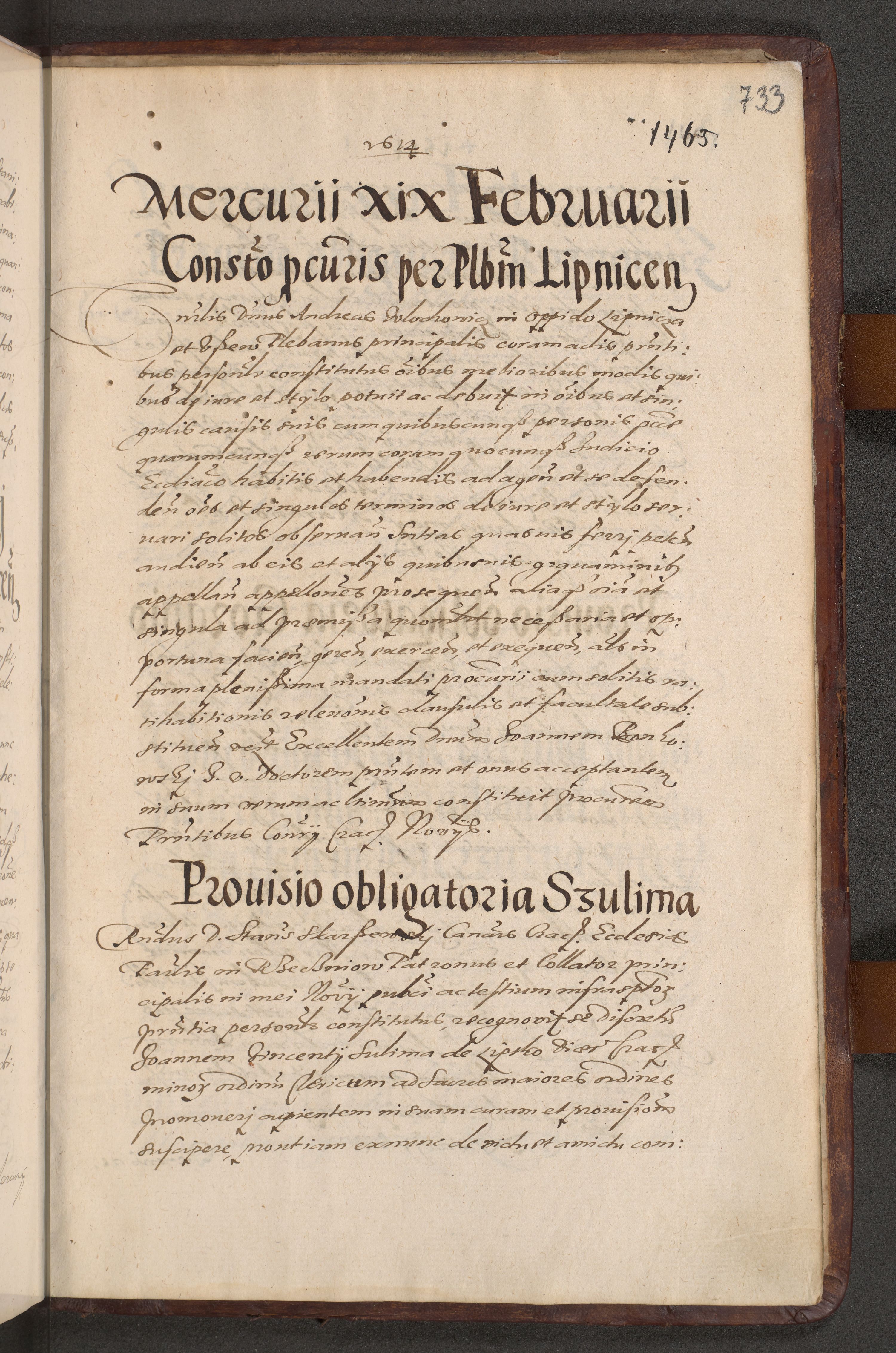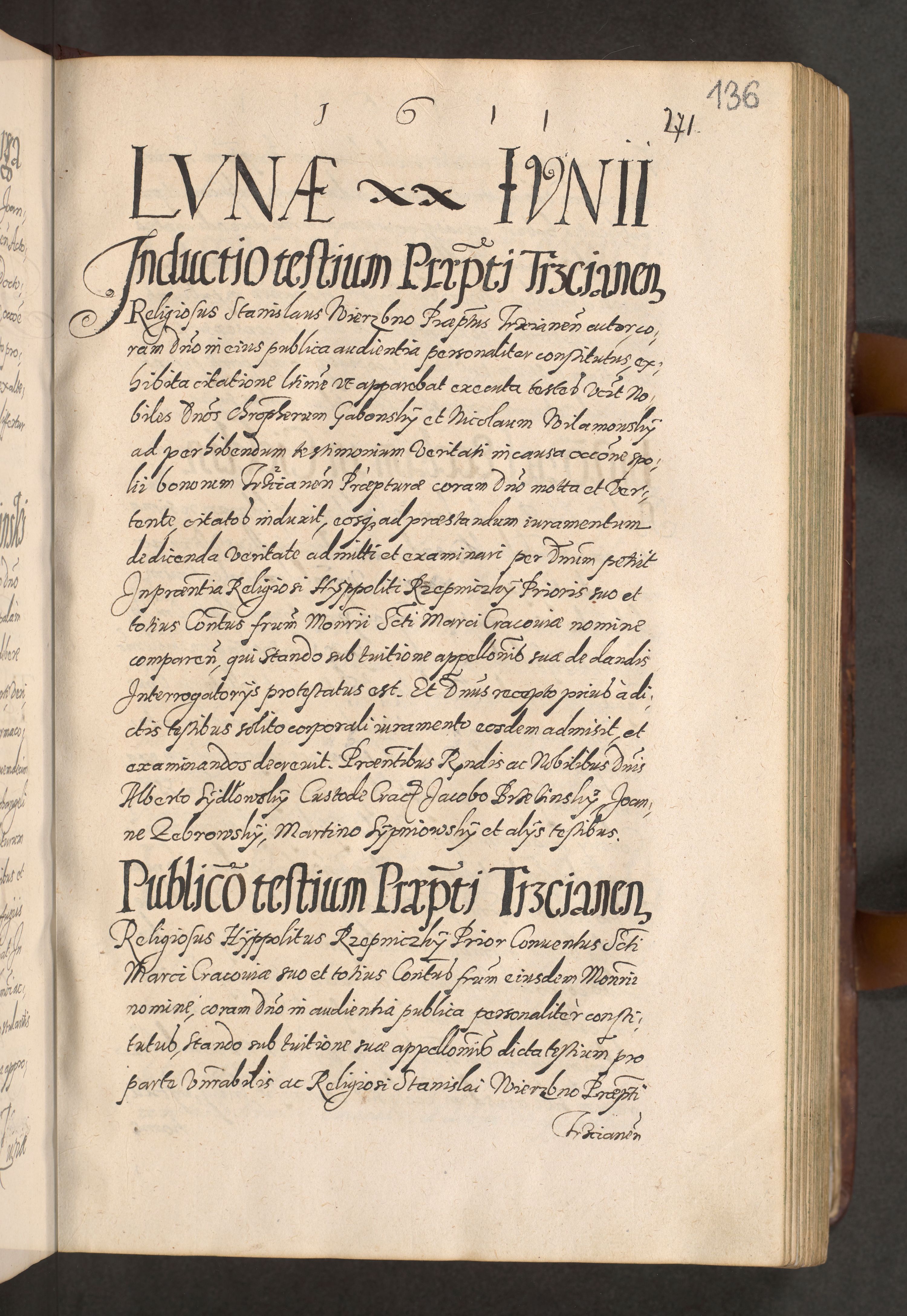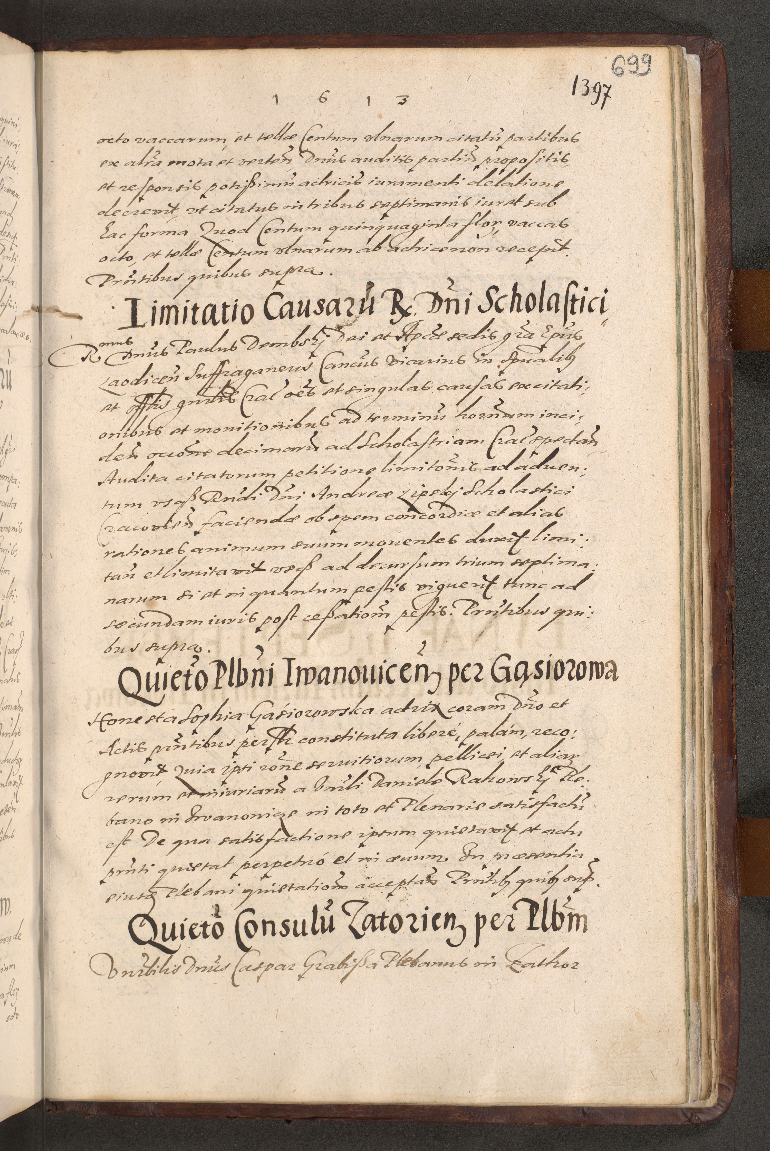 Acta actorum causarum sententiarum tam diffinitiuarum quam interloquutorisrum decretorum obligationum quietationum procuratorum constitutionum etc. etc. coram Reverendo Domino Paulo Dembski Dei et Apostolice Sedis Gratia Episcopalo Dicensis Suffraganeo Canonico Vicario in Spiritualibus et Officiali Generali Cracoviensis ad Annum Domini Millesimum Sexcentesimum Undecimum cuius indictio octava pontificatus Sanctissimi Domini Nostri Domini Pauli Divina Providentia Papae Vti foeliciter continuantur
