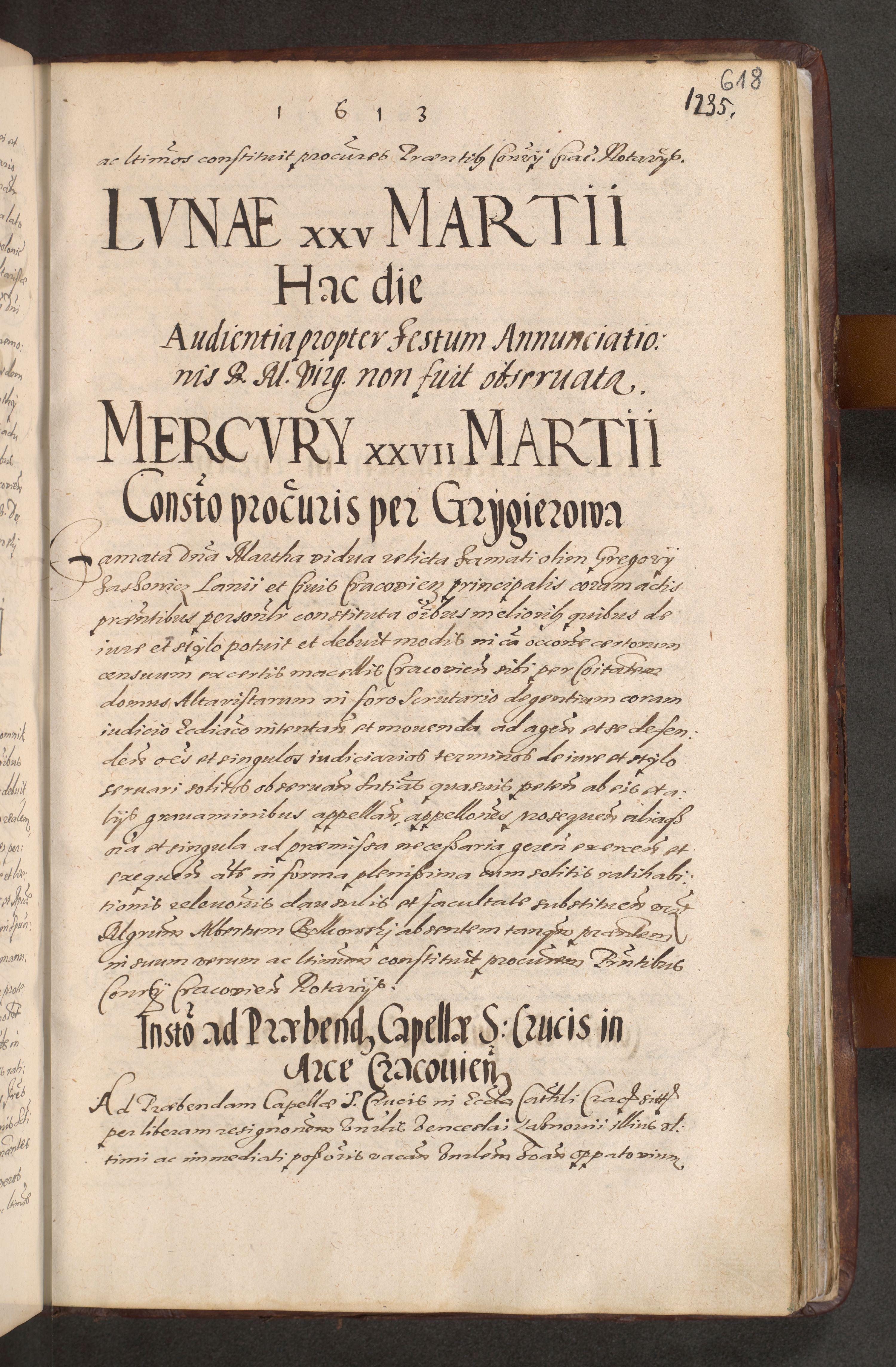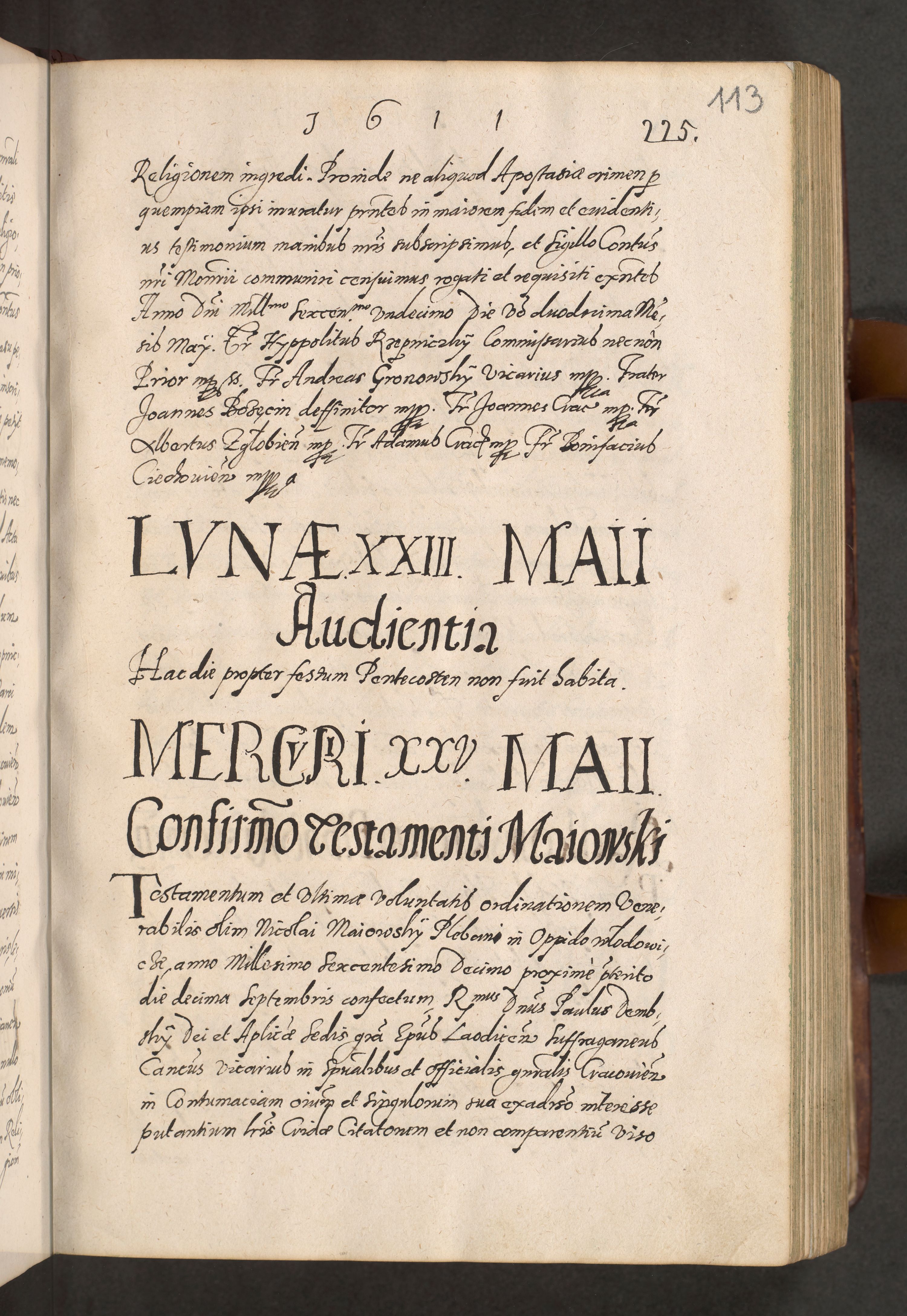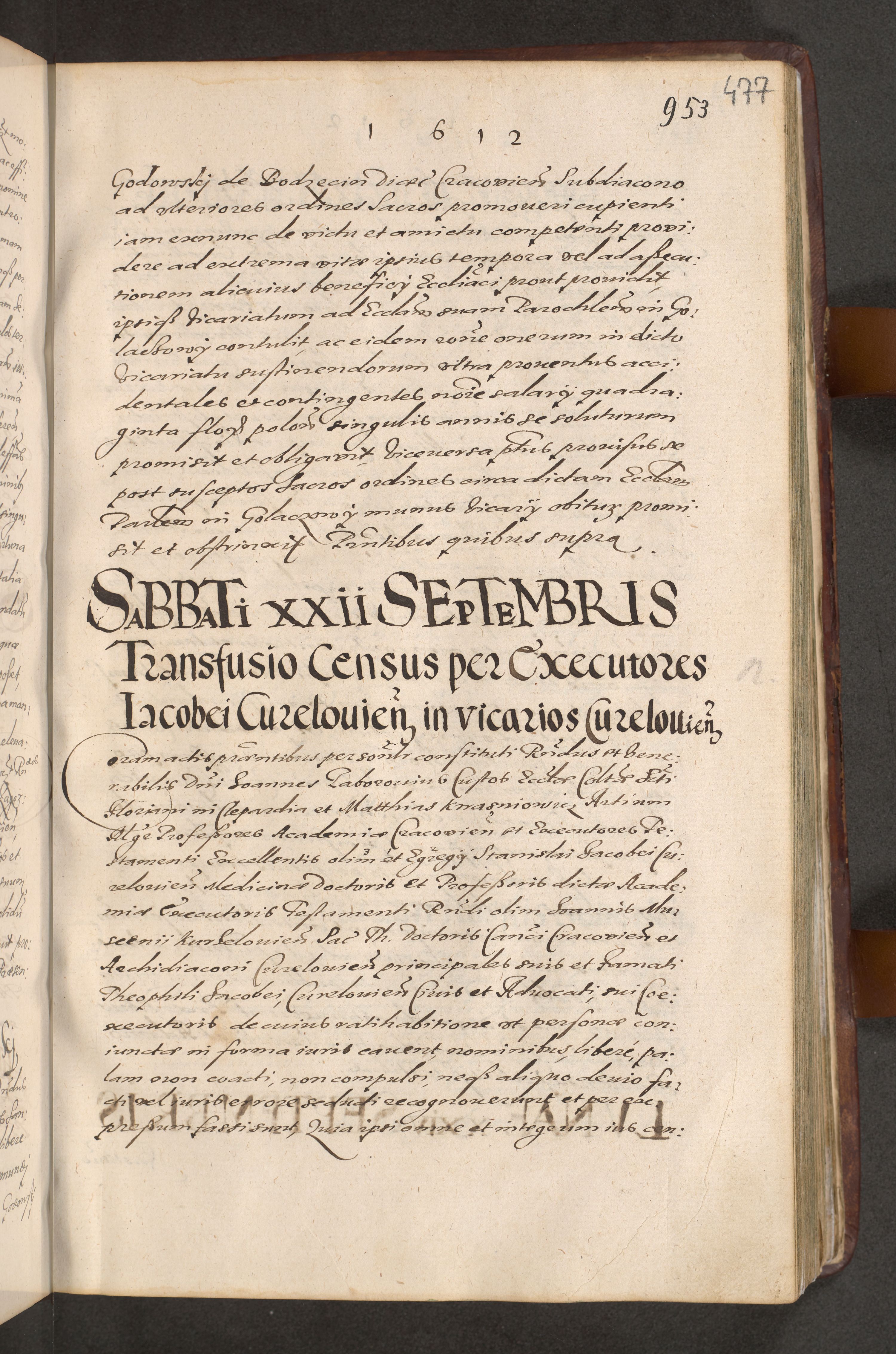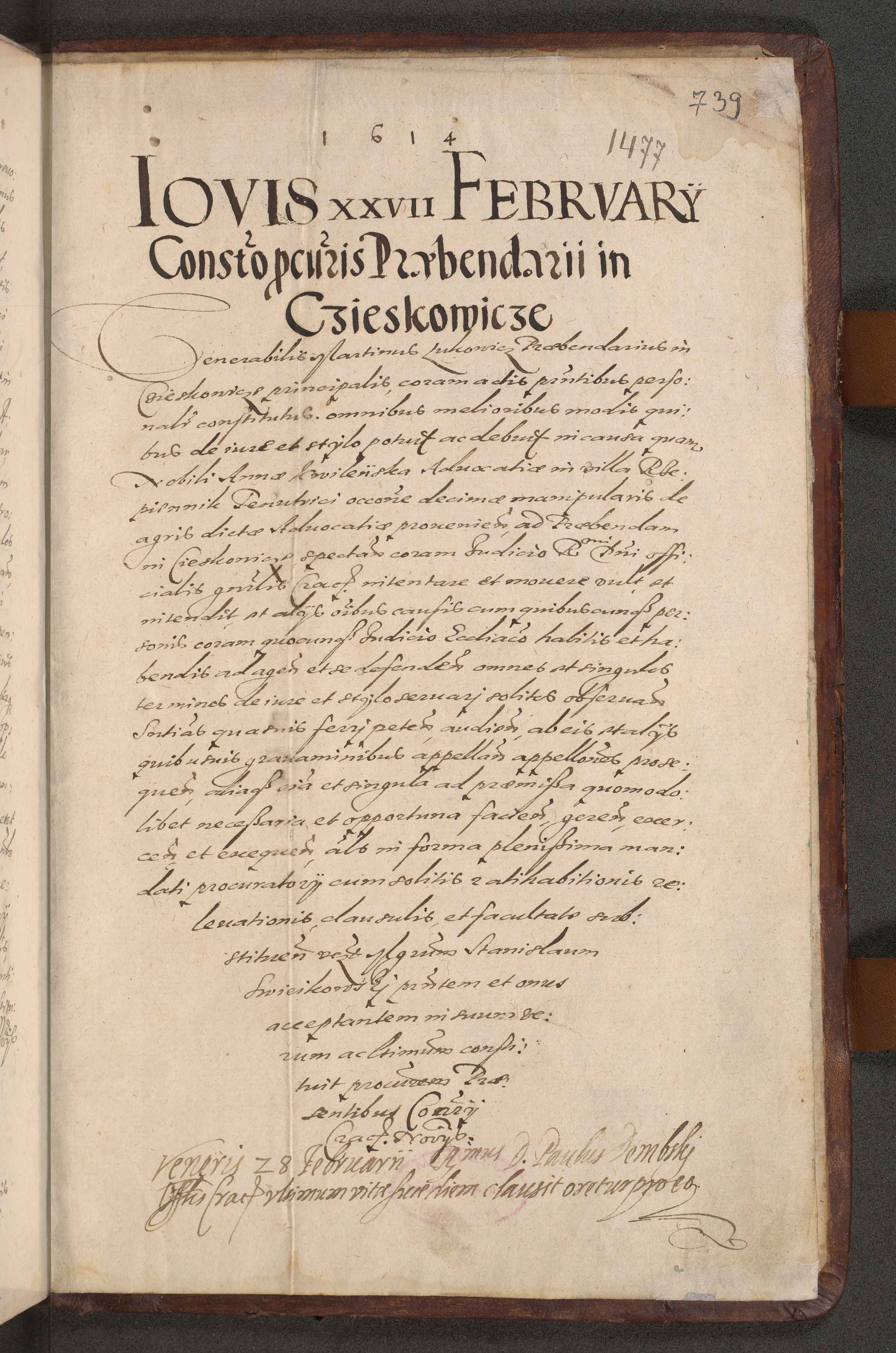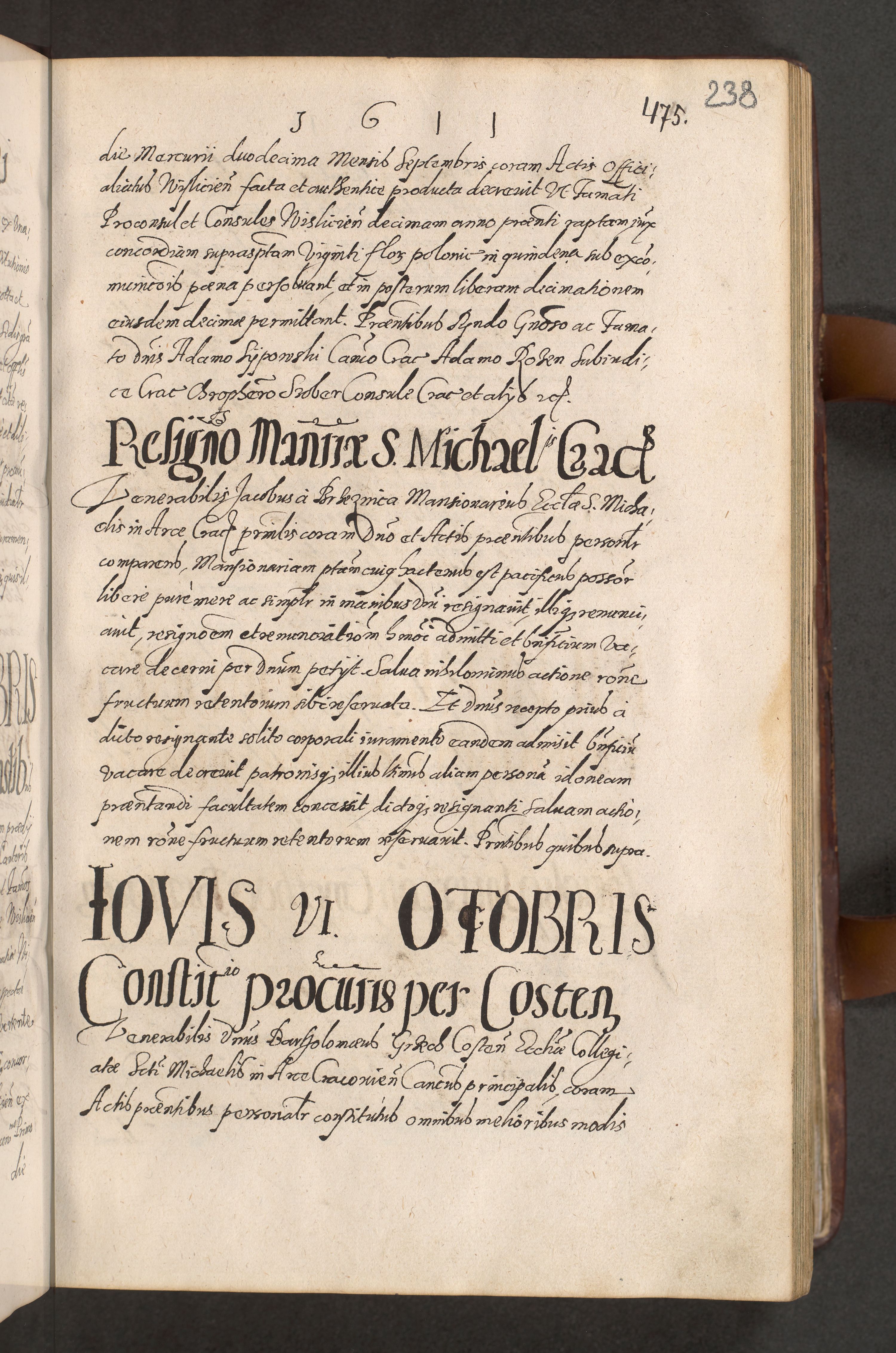 Acta actorum causarum sententiarum tam diffinitiuarum quam interloquutorisrum decretorum obligationum quietationum procuratorum constitutionum etc. etc. coram Reverendo Domino Paulo Dembski Dei et Apostolice Sedis Gratia Episcopalo Dicensis Suffraganeo Canonico Vicario in Spiritualibus et Officiali Generali Cracoviensis ad Annum Domini Millesimum Sexcentesimum Undecimum cuius indictio octava pontificatus Sanctissimi Domini Nostri Domini Pauli Divina Providentia Papae Vti foeliciter continuantur