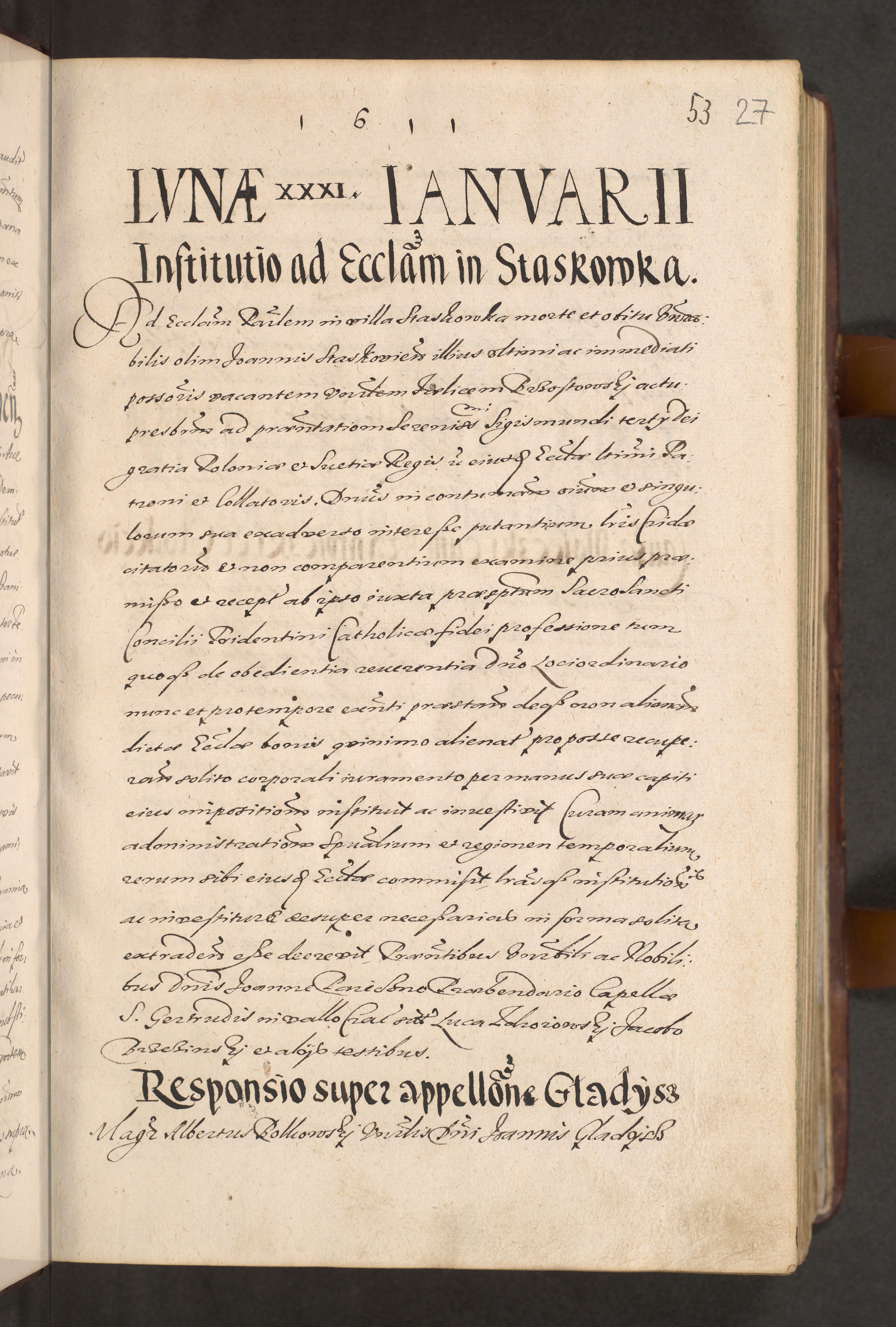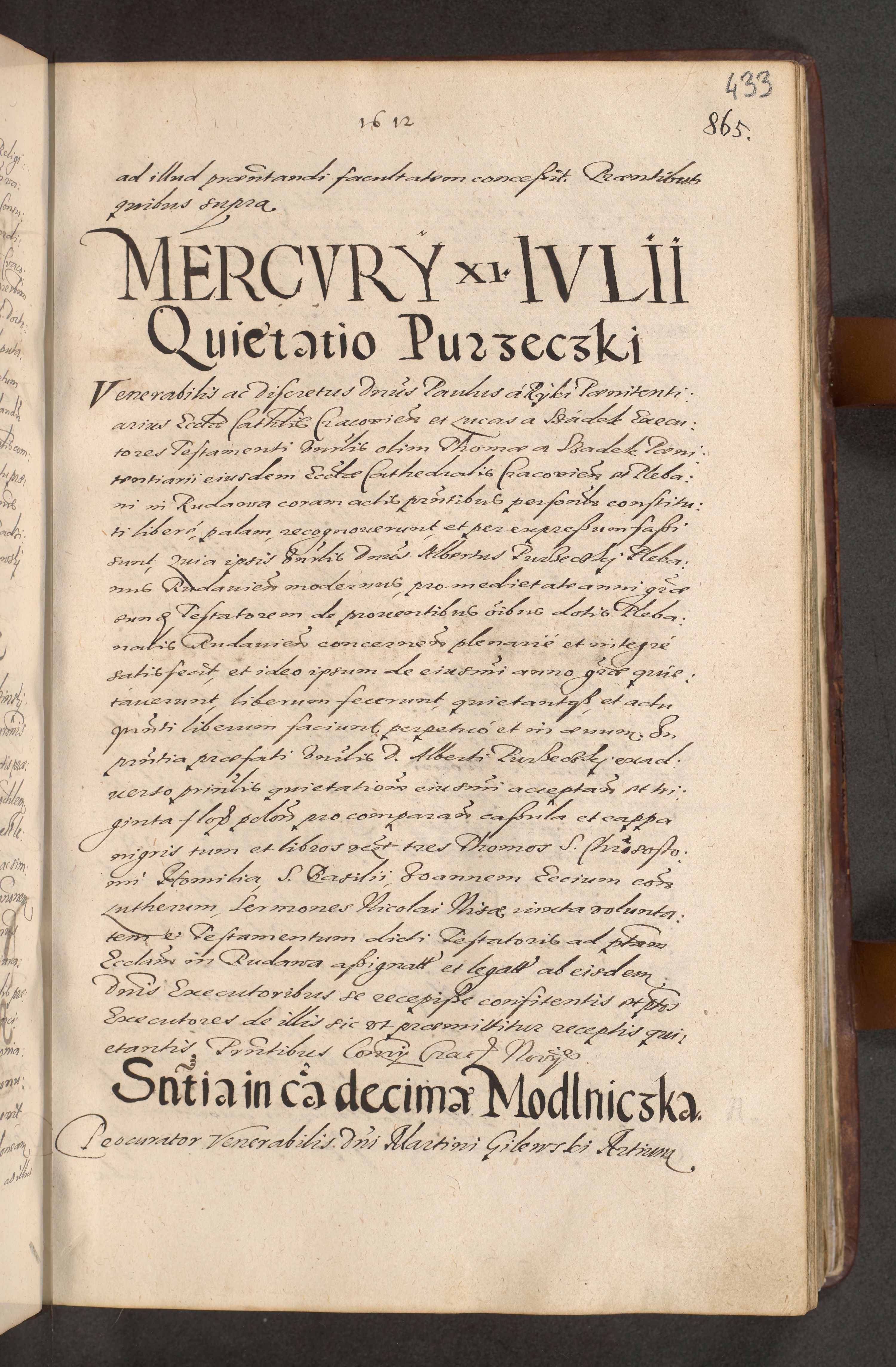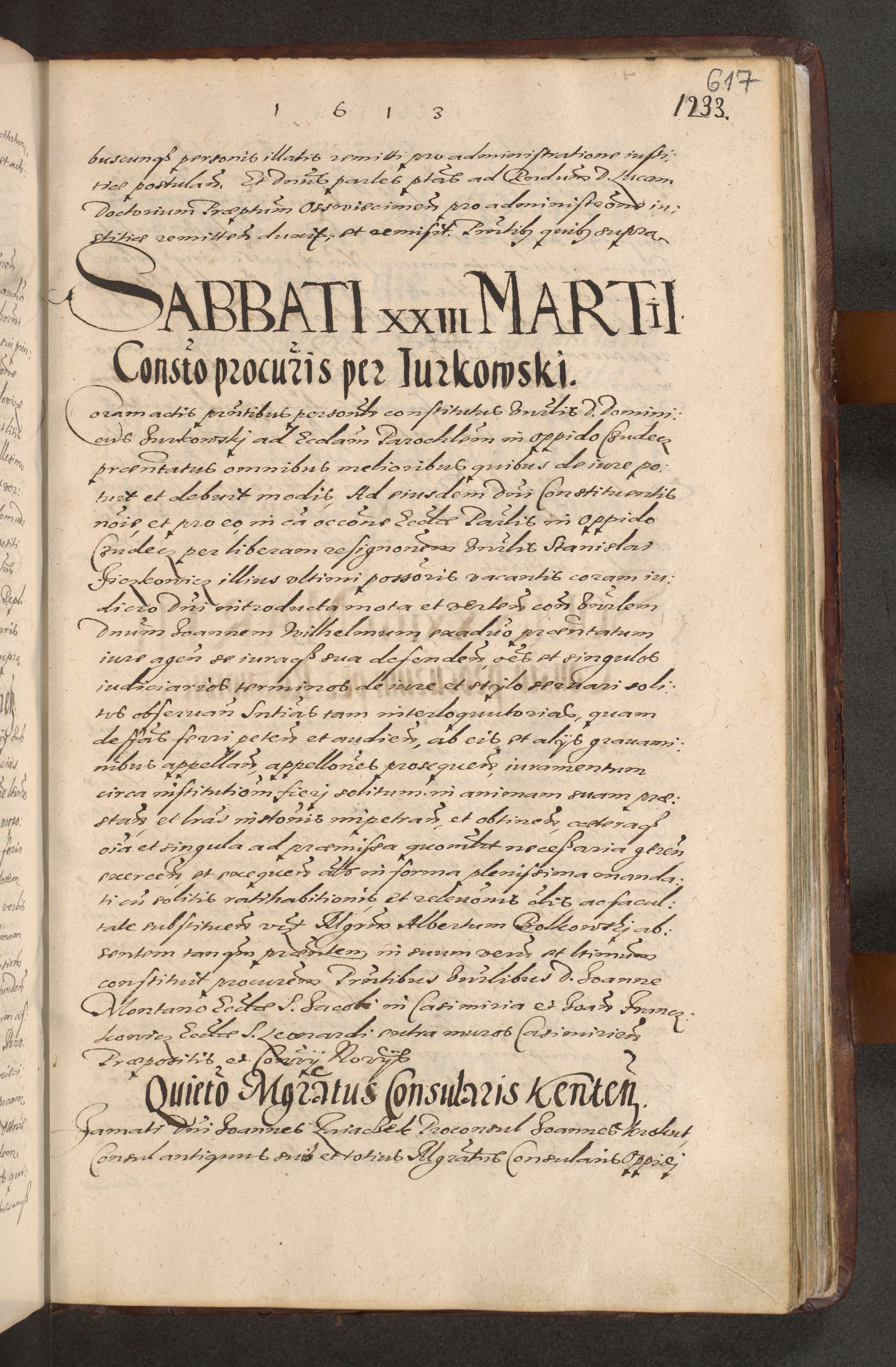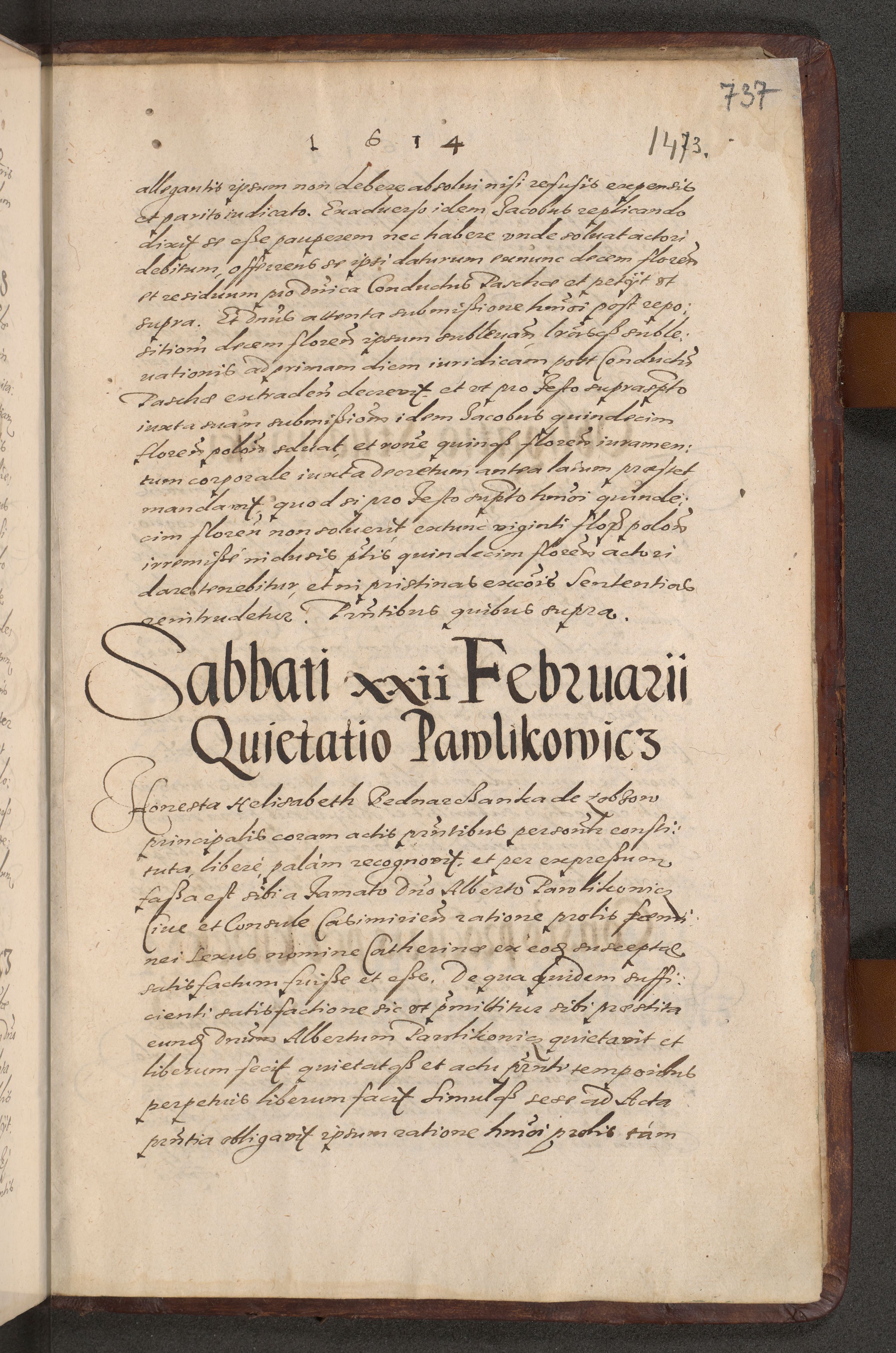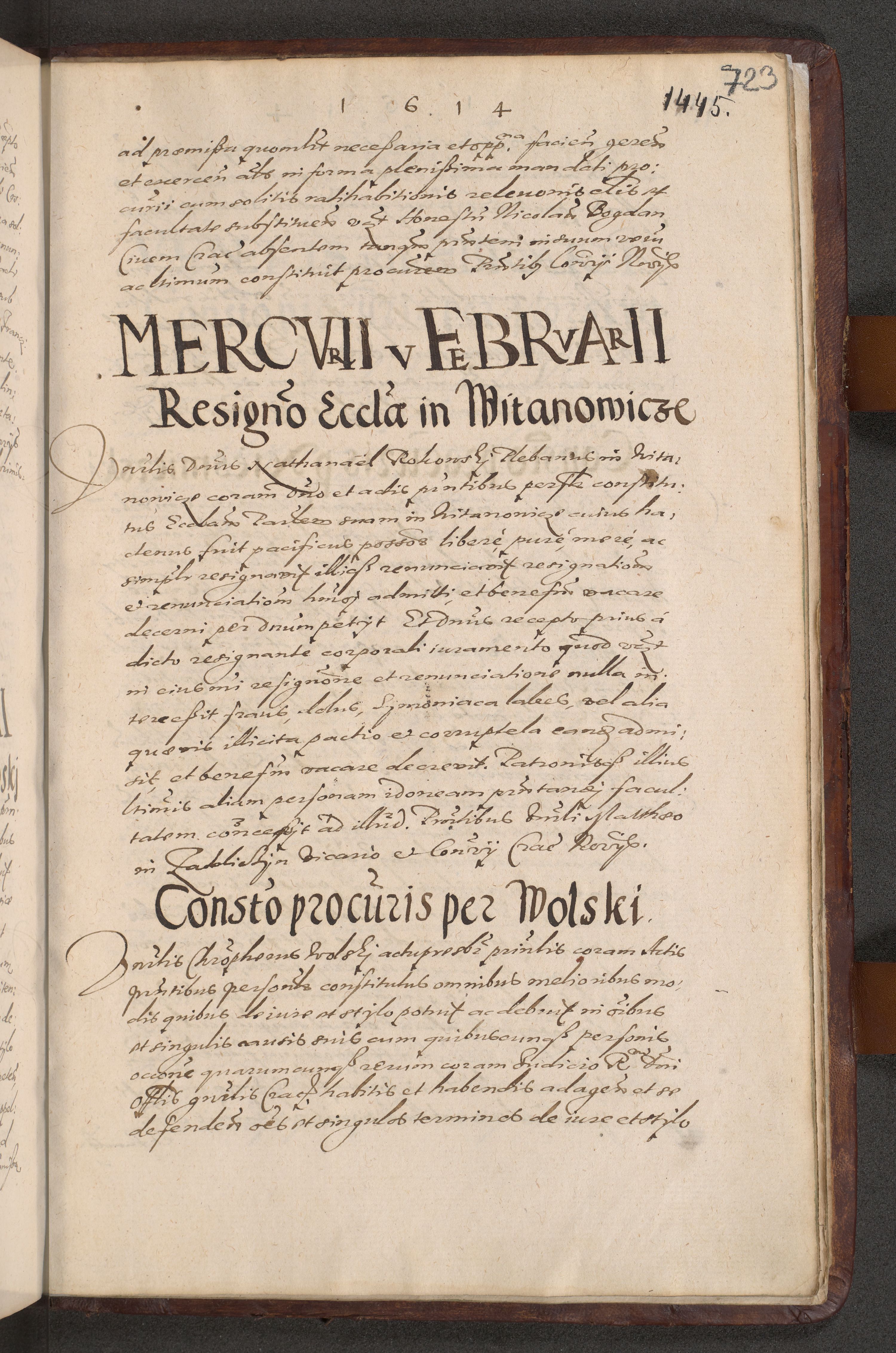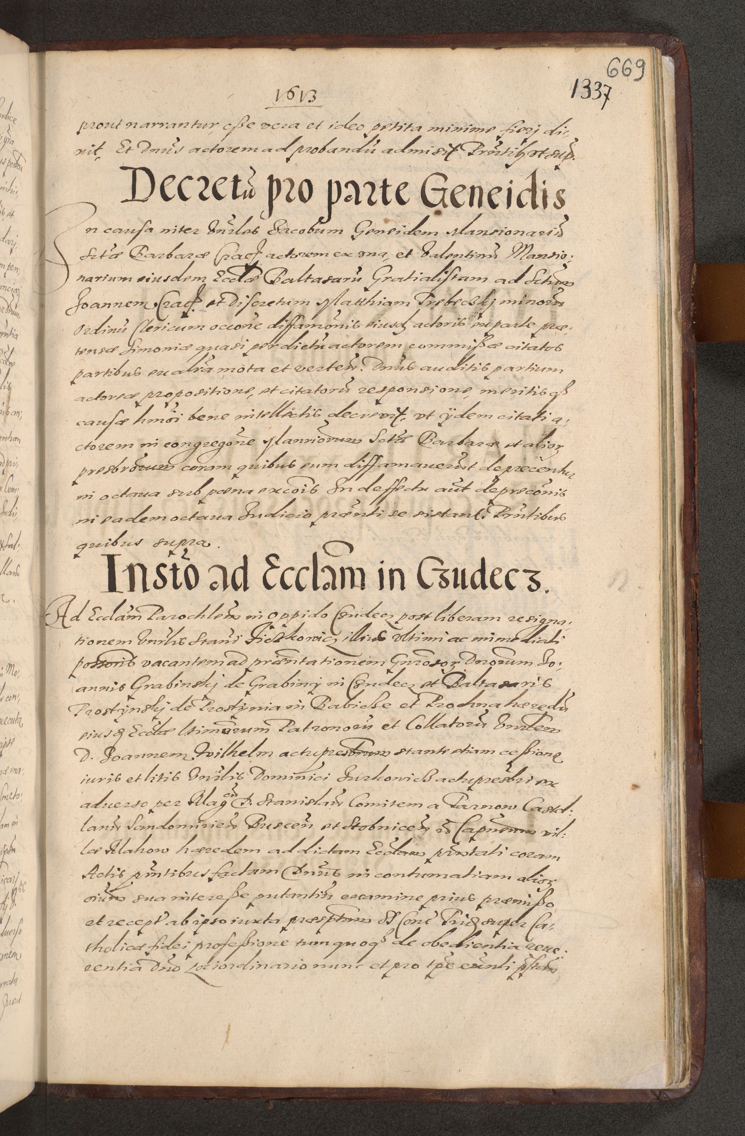 Acta actorum causarum sententiarum tam diffinitiuarum quam interloquutorisrum decretorum obligationum quietationum procuratorum constitutionum etc. etc. coram Reverendo Domino Paulo Dembski Dei et Apostolice Sedis Gratia Episcopalo Dicensis Suffraganeo Canonico Vicario in Spiritualibus et Officiali Generali Cracoviensis ad Annum Domini Millesimum Sexcentesimum Undecimum cuius indictio octava pontificatus Sanctissimi Domini Nostri Domini Pauli Divina Providentia Papae Vti foeliciter continuantur