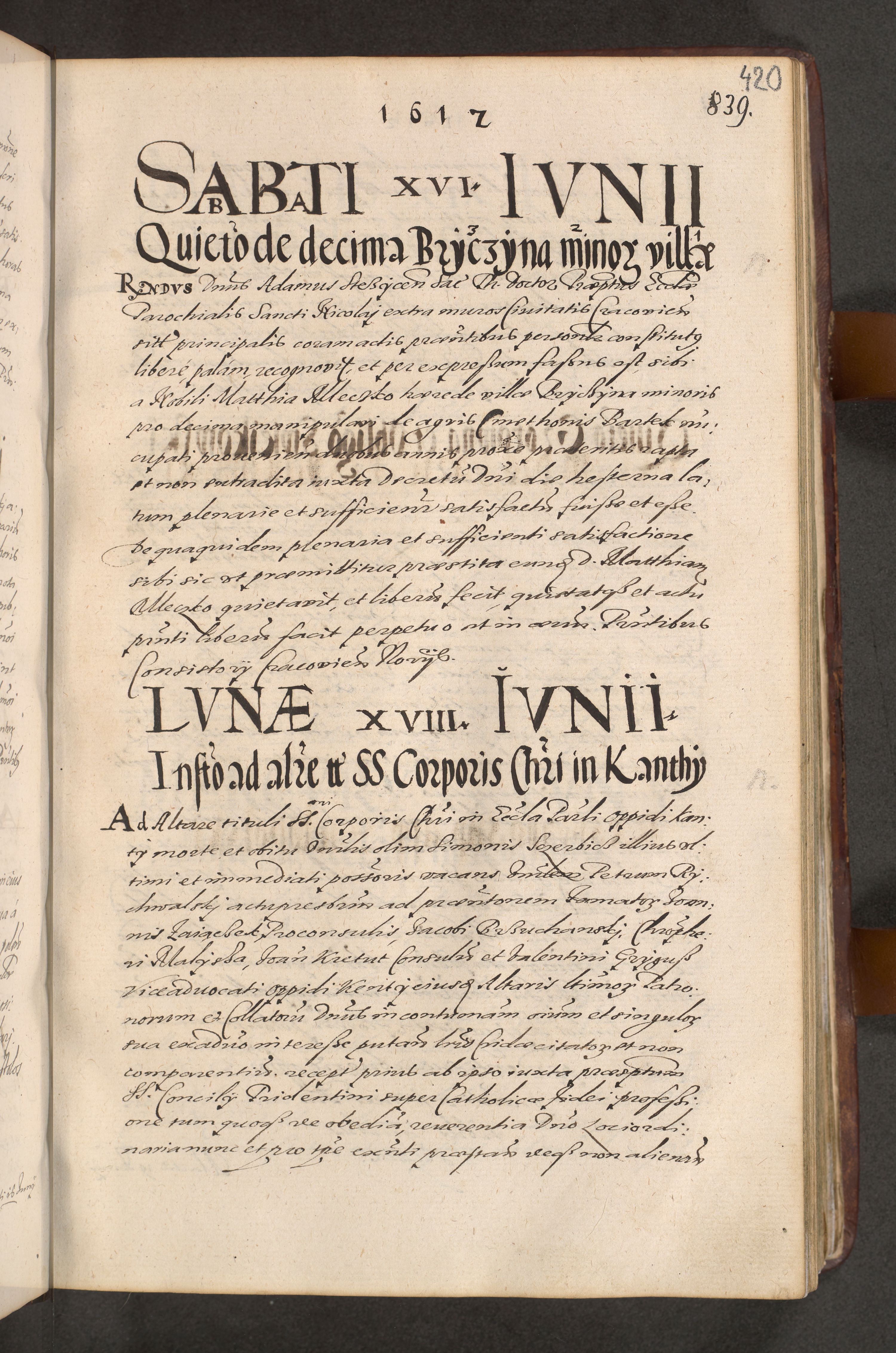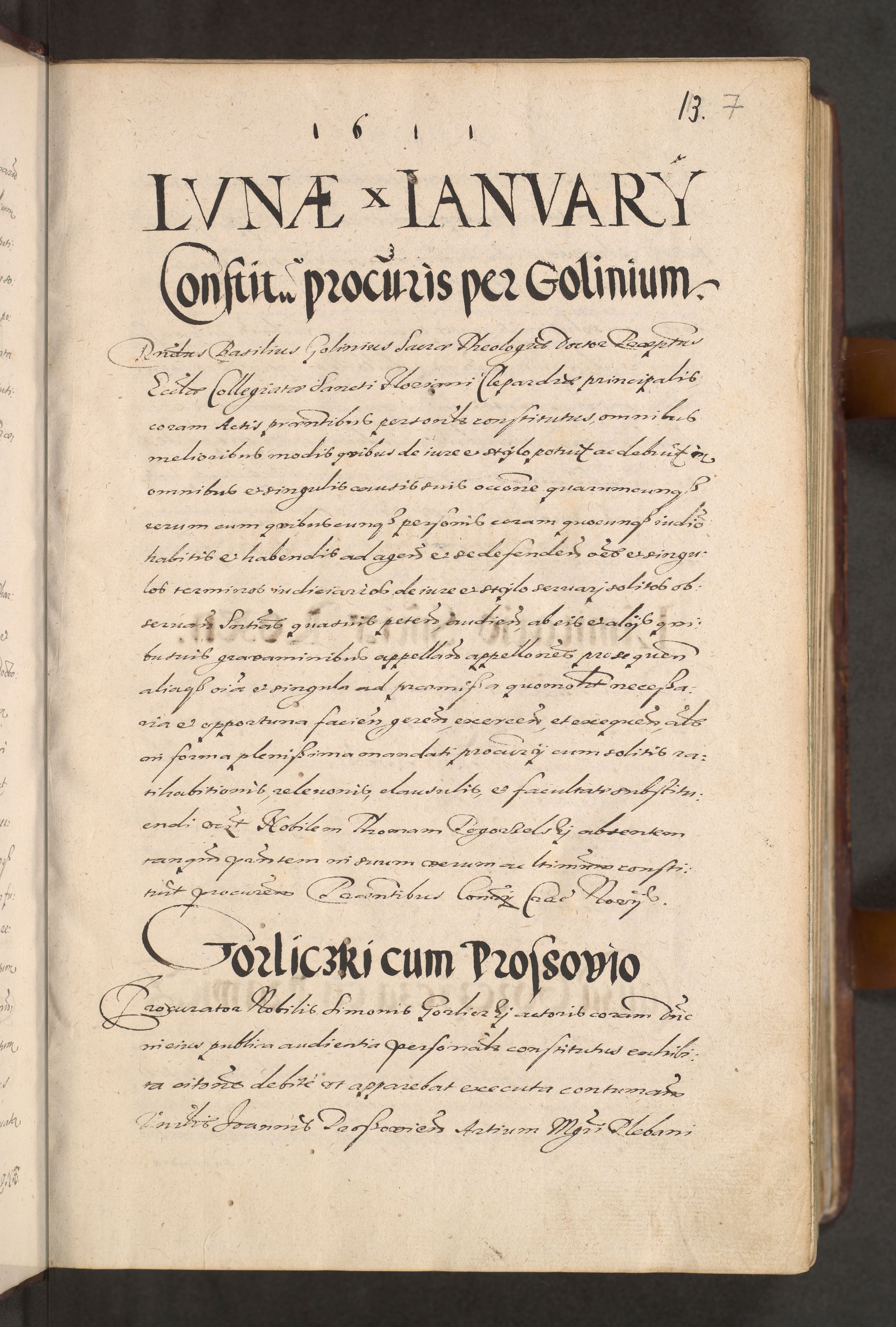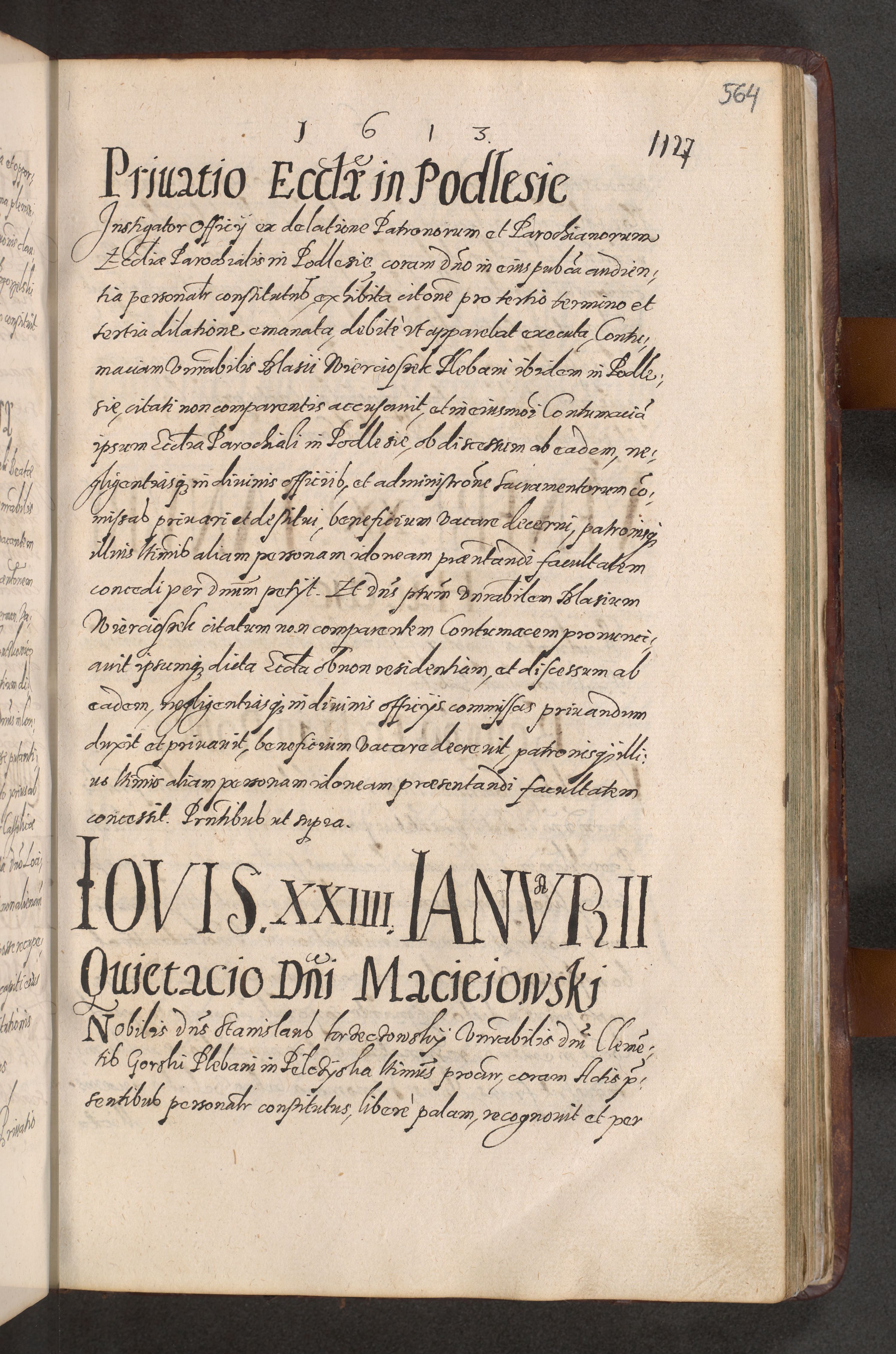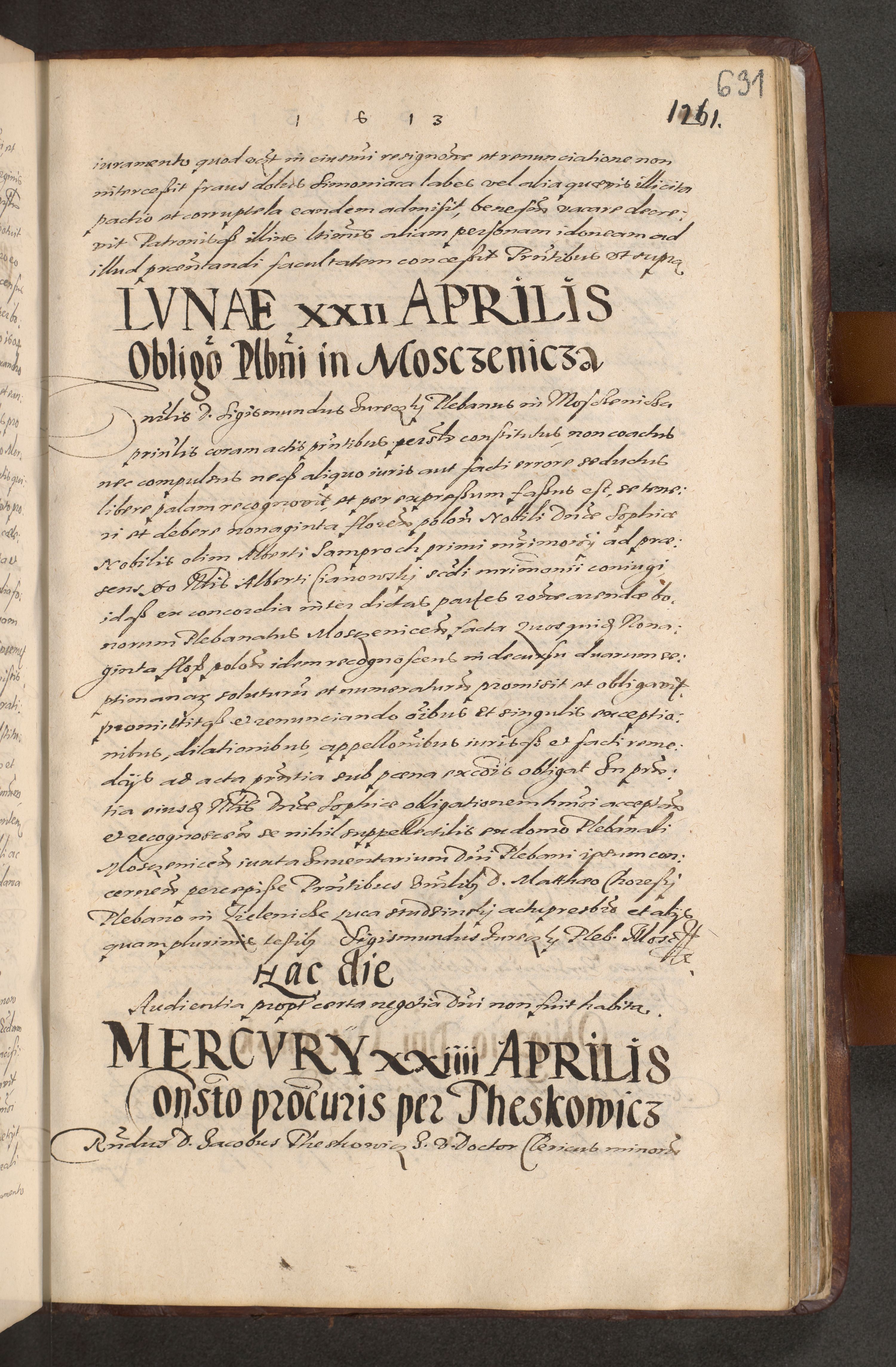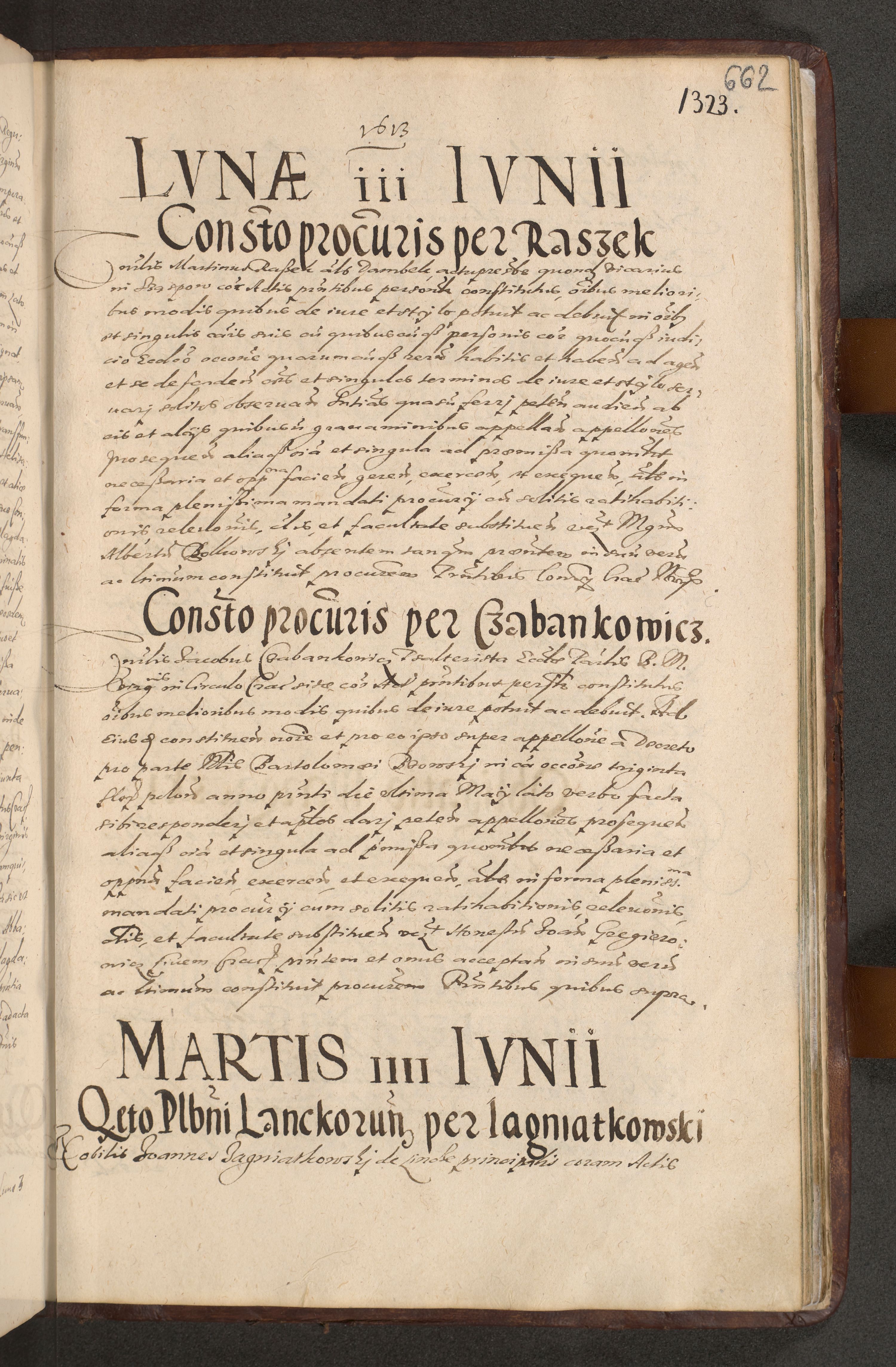 Acta actorum causarum sententiarum tam diffinitiuarum quam interloquutorisrum decretorum obligationum quietationum procuratorum constitutionum etc. etc. coram Reverendo Domino Paulo Dembski Dei et Apostolice Sedis Gratia Episcopalo Dicensis Suffraganeo Canonico Vicario in Spiritualibus et Officiali Generali Cracoviensis ad Annum Domini Millesimum Sexcentesimum Undecimum cuius indictio octava pontificatus Sanctissimi Domini Nostri Domini Pauli Divina Providentia Papae Vti foeliciter continuantur