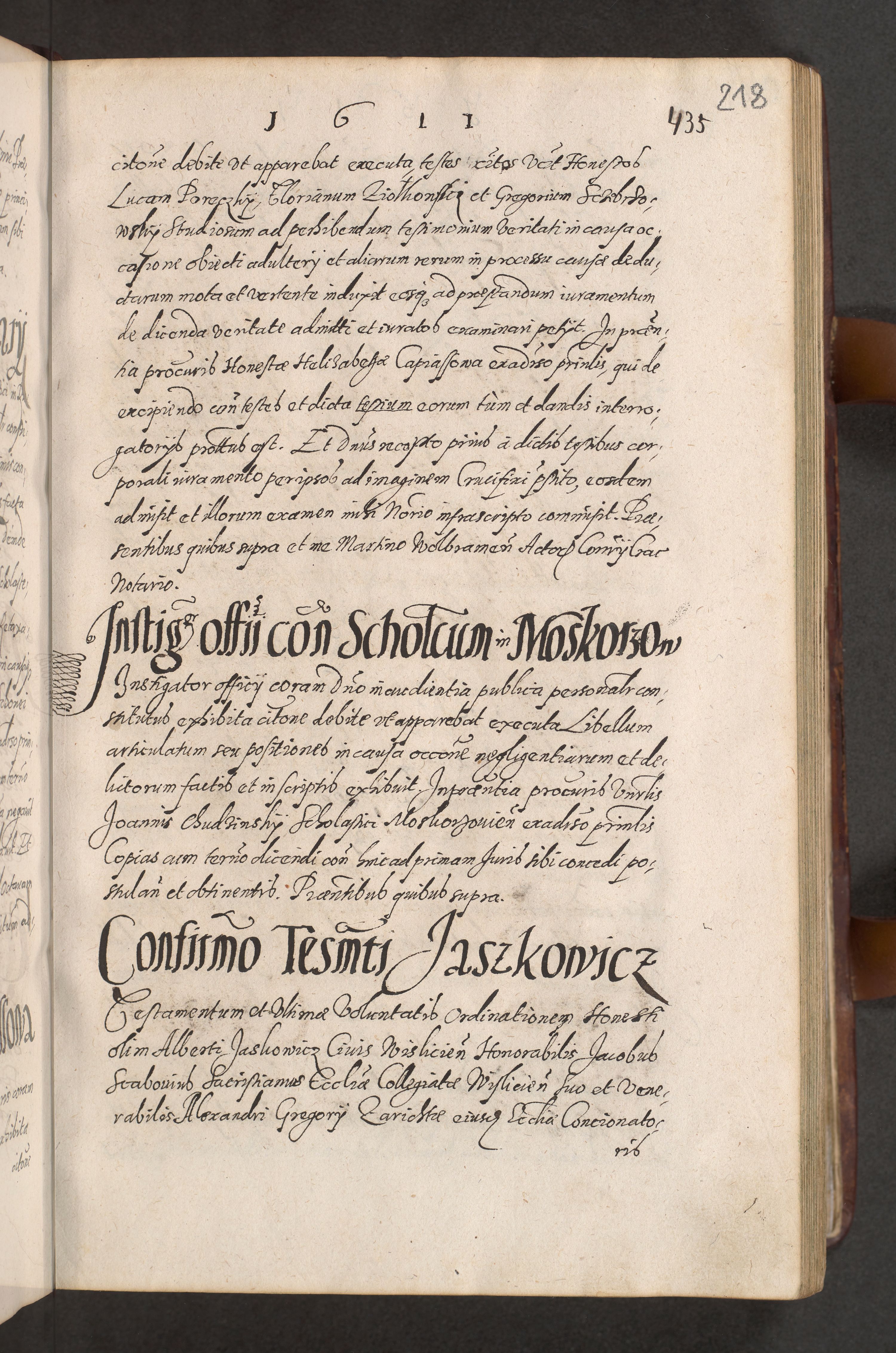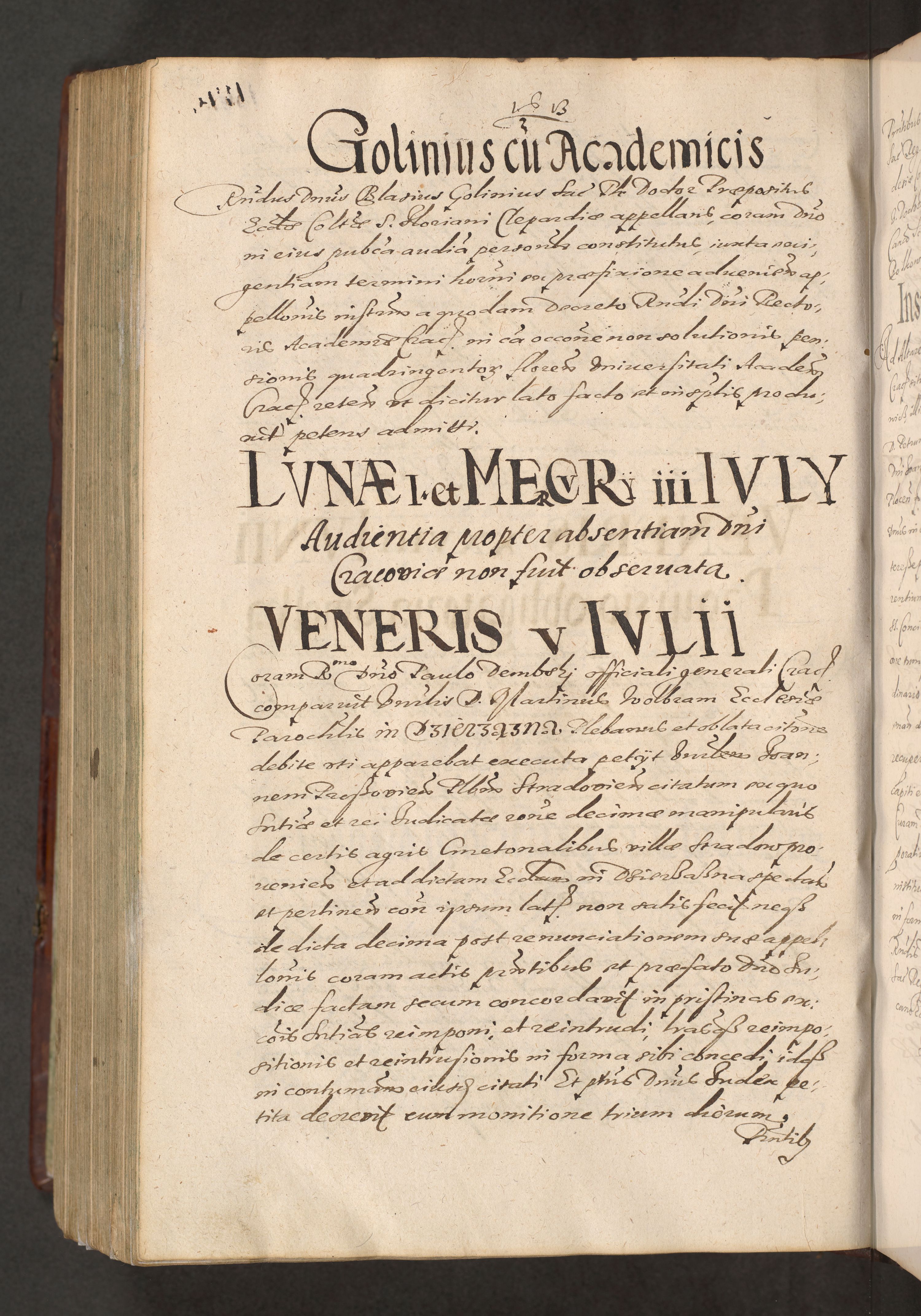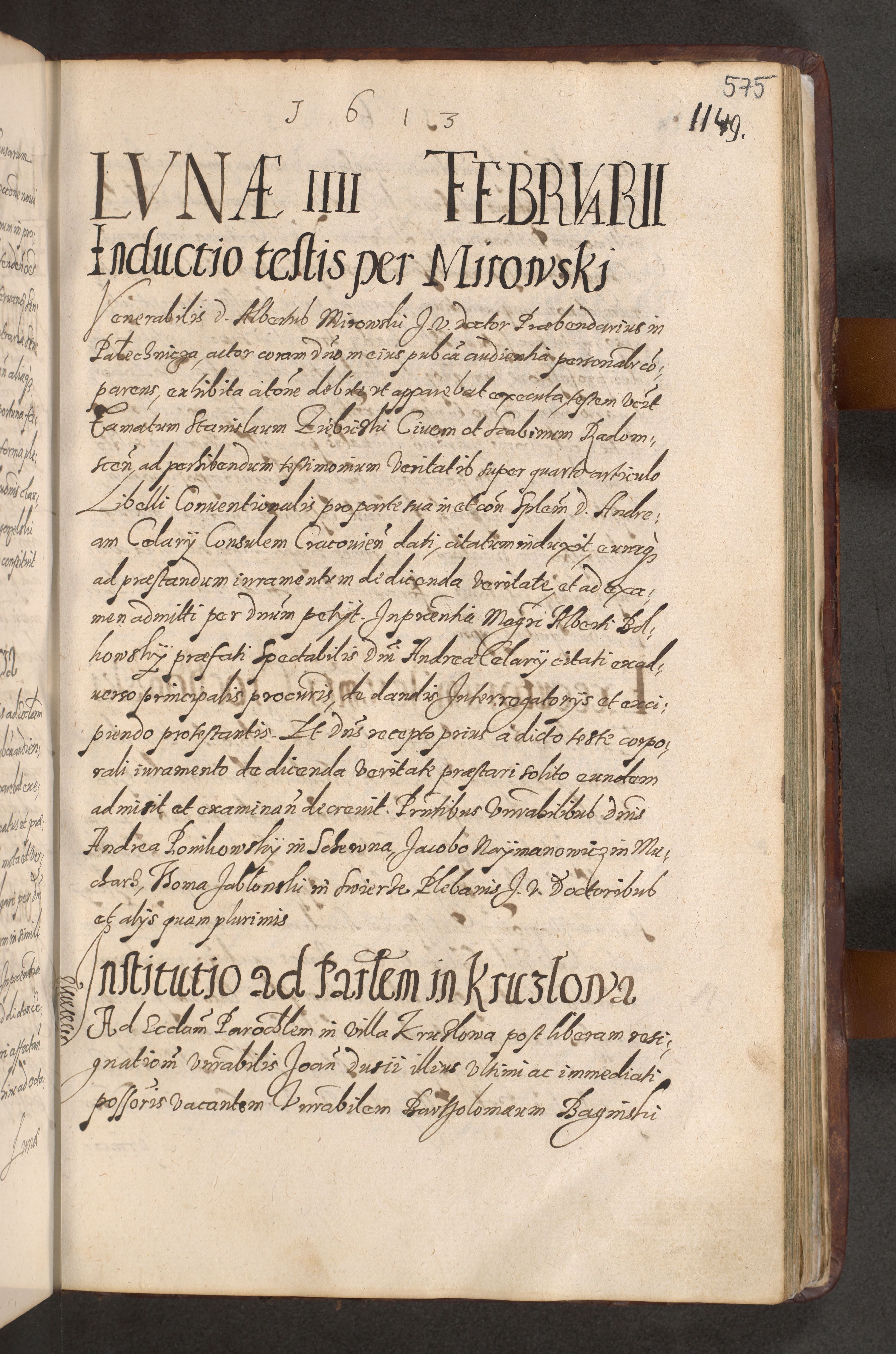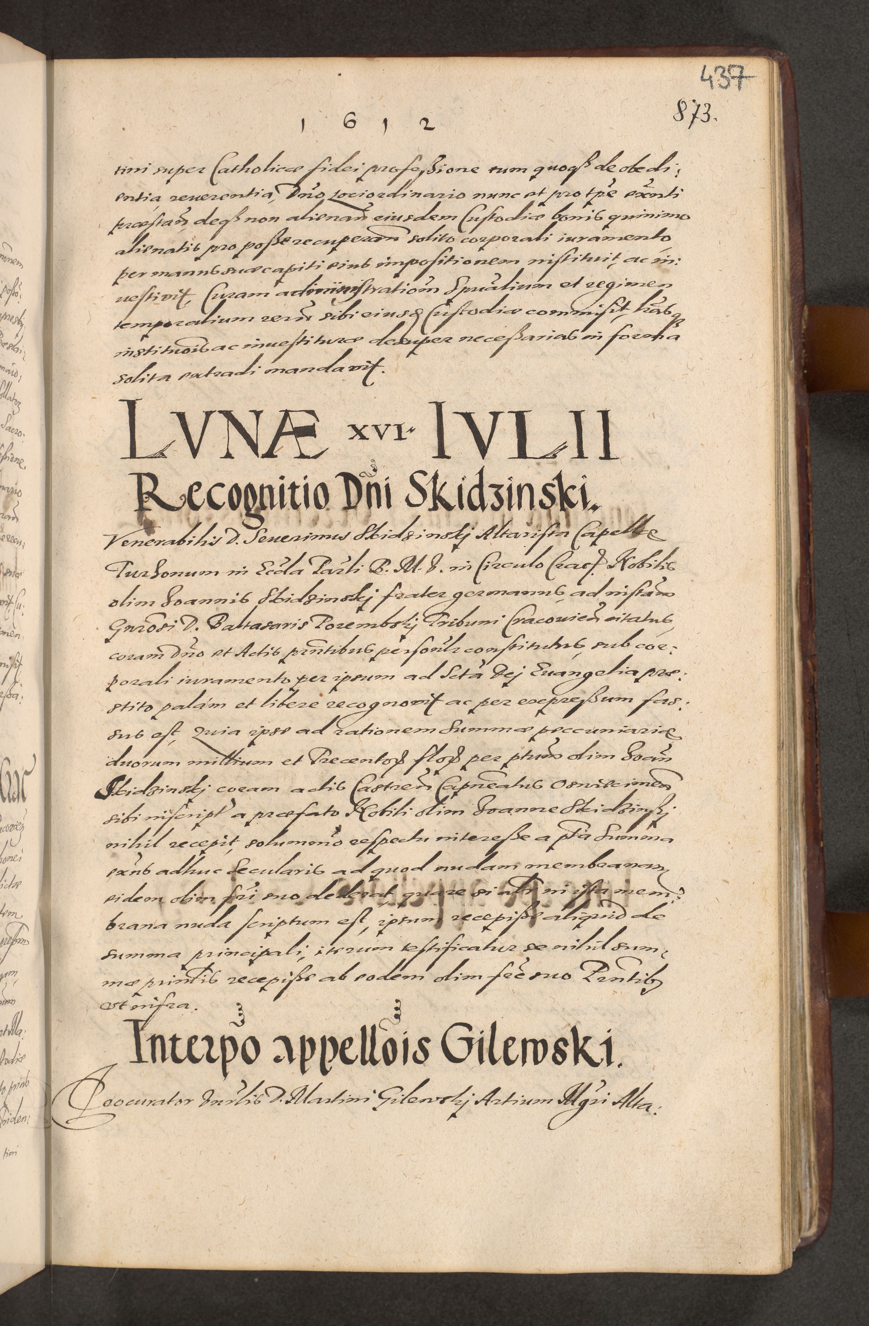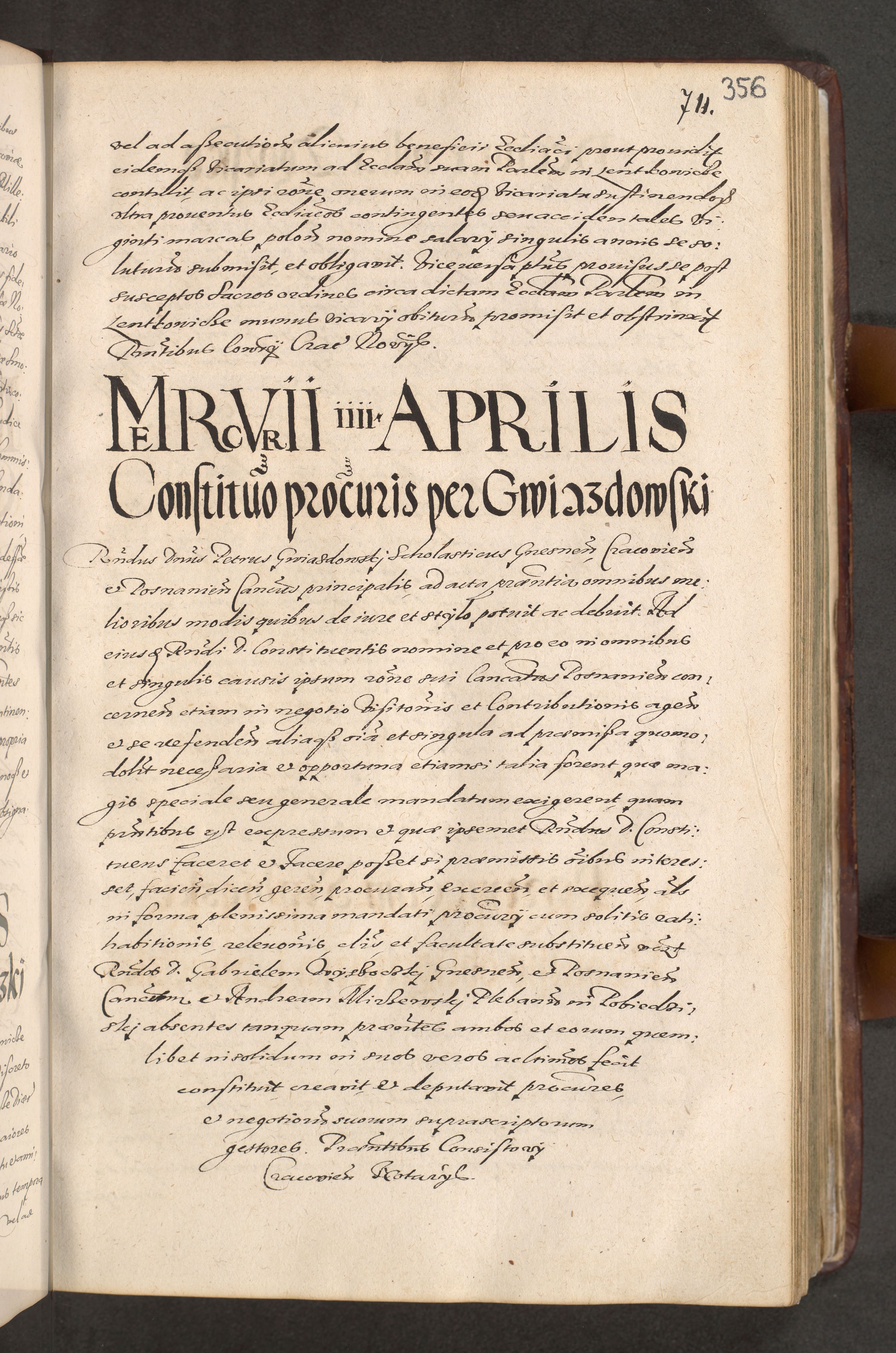 Acta actorum causarum sententiarum tam diffinitiuarum quam interloquutorisrum decretorum obligationum quietationum procuratorum constitutionum etc. etc. coram Reverendo Domino Paulo Dembski Dei et Apostolice Sedis Gratia Episcopalo Dicensis Suffraganeo Canonico Vicario in Spiritualibus et Officiali Generali Cracoviensis ad Annum Domini Millesimum Sexcentesimum Undecimum cuius indictio octava pontificatus Sanctissimi Domini Nostri Domini Pauli Divina Providentia Papae Vti foeliciter continuantur