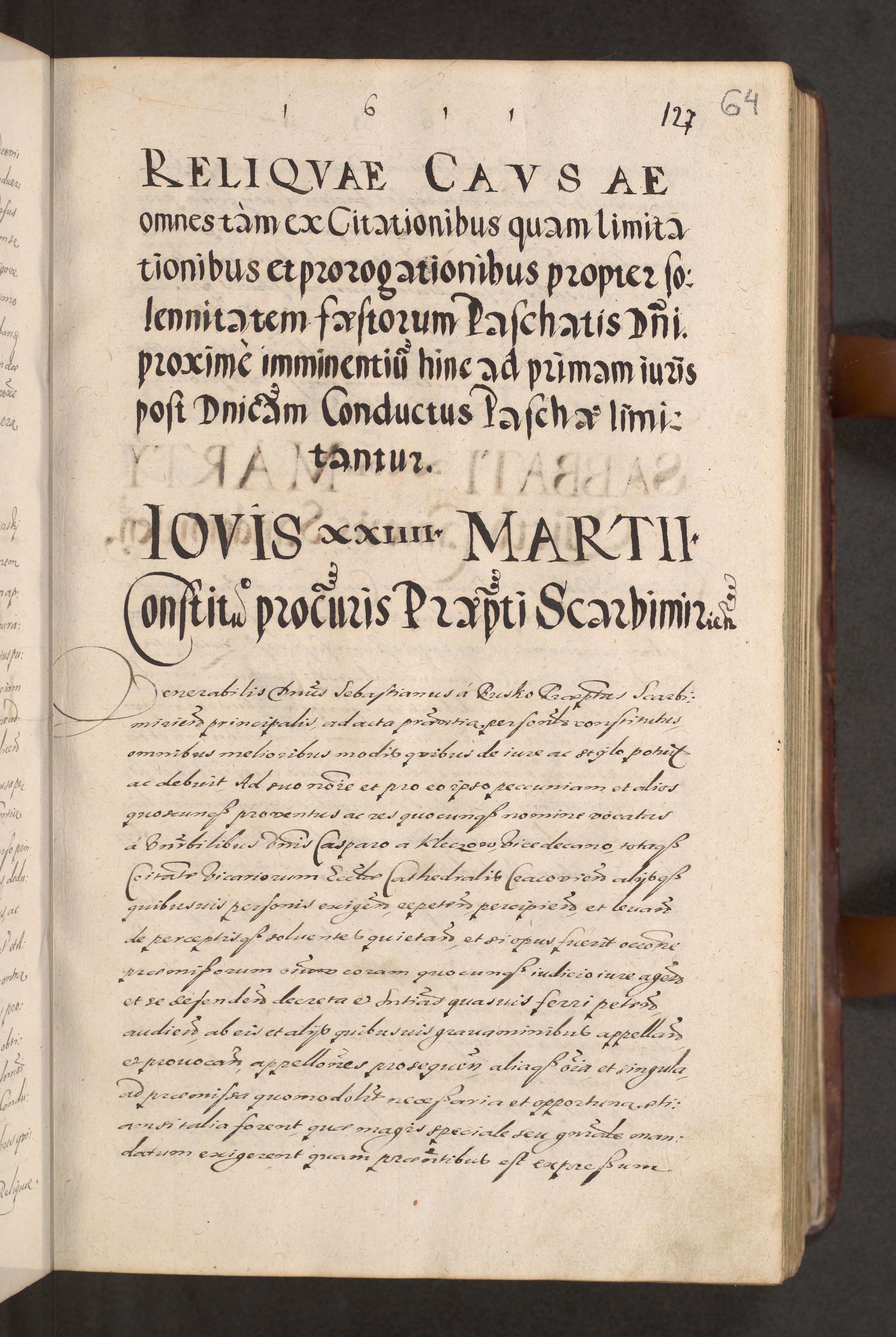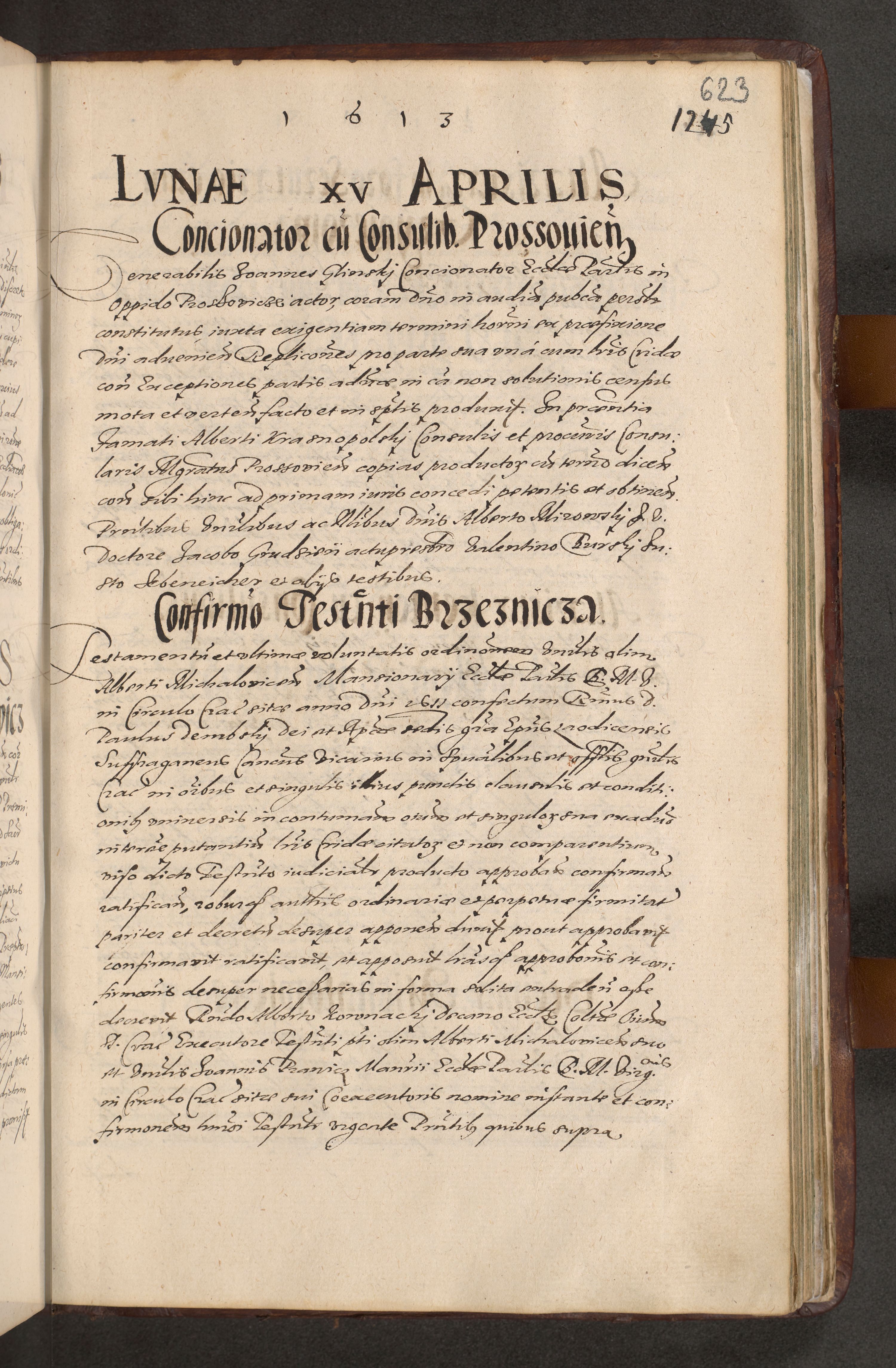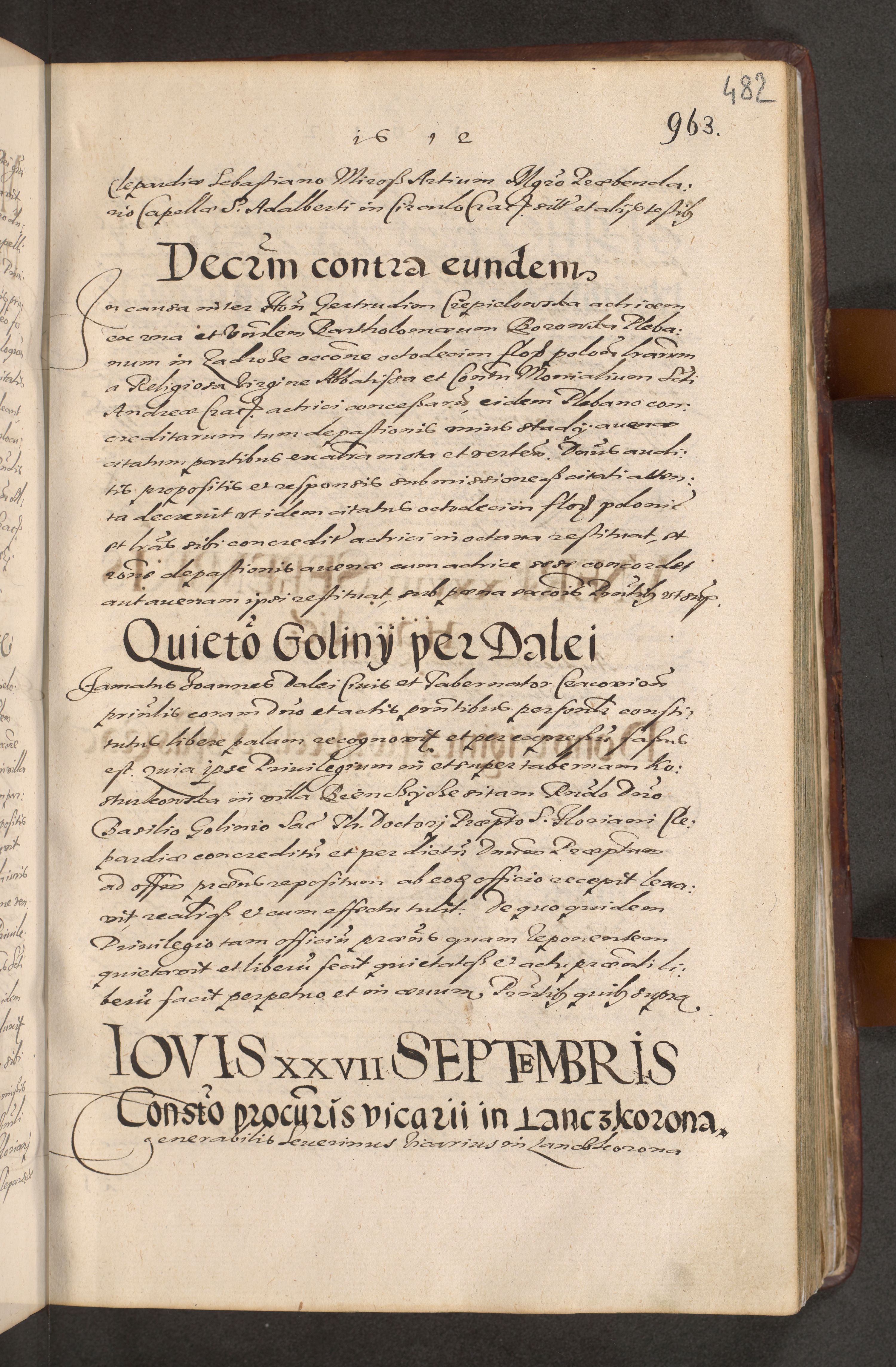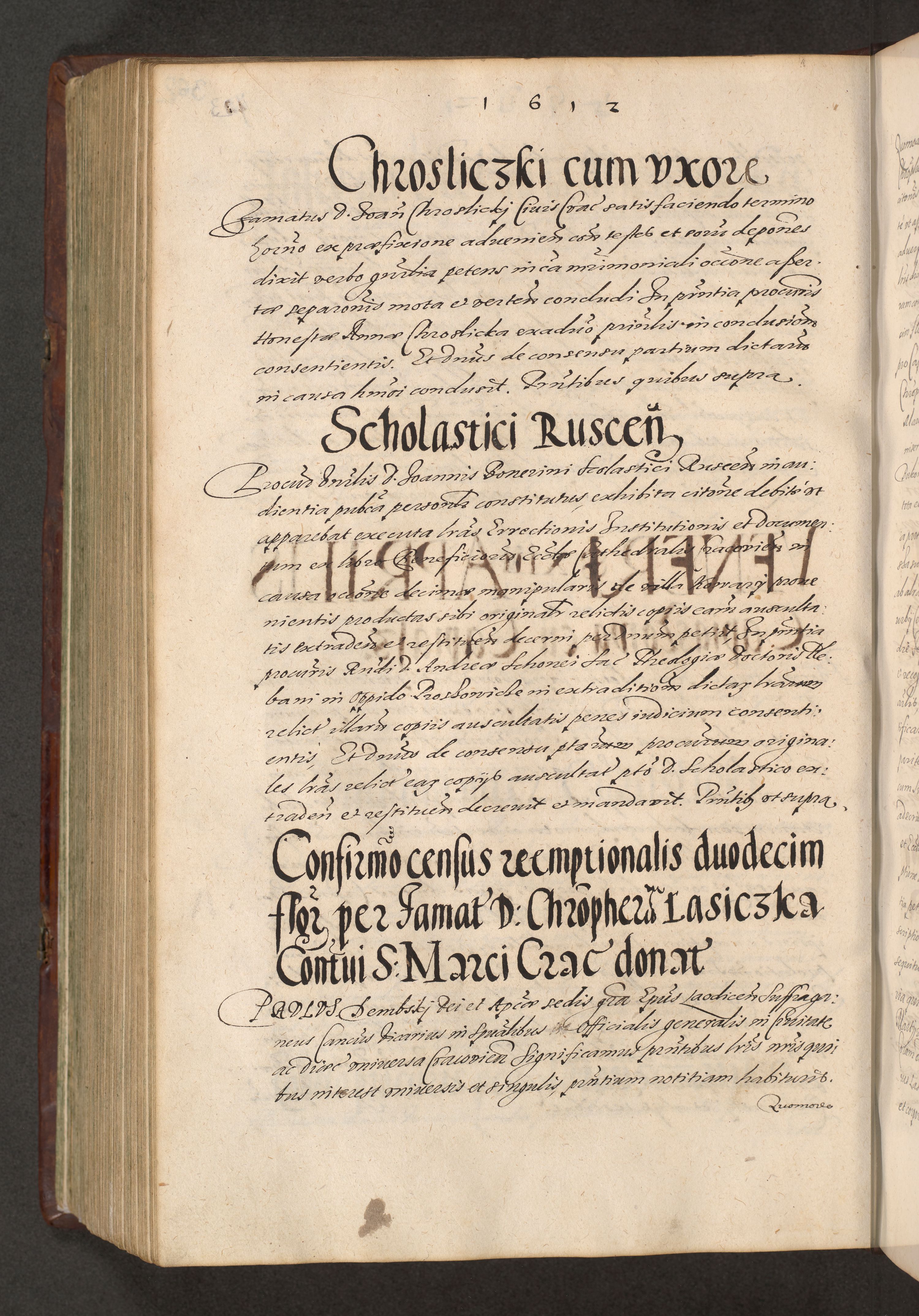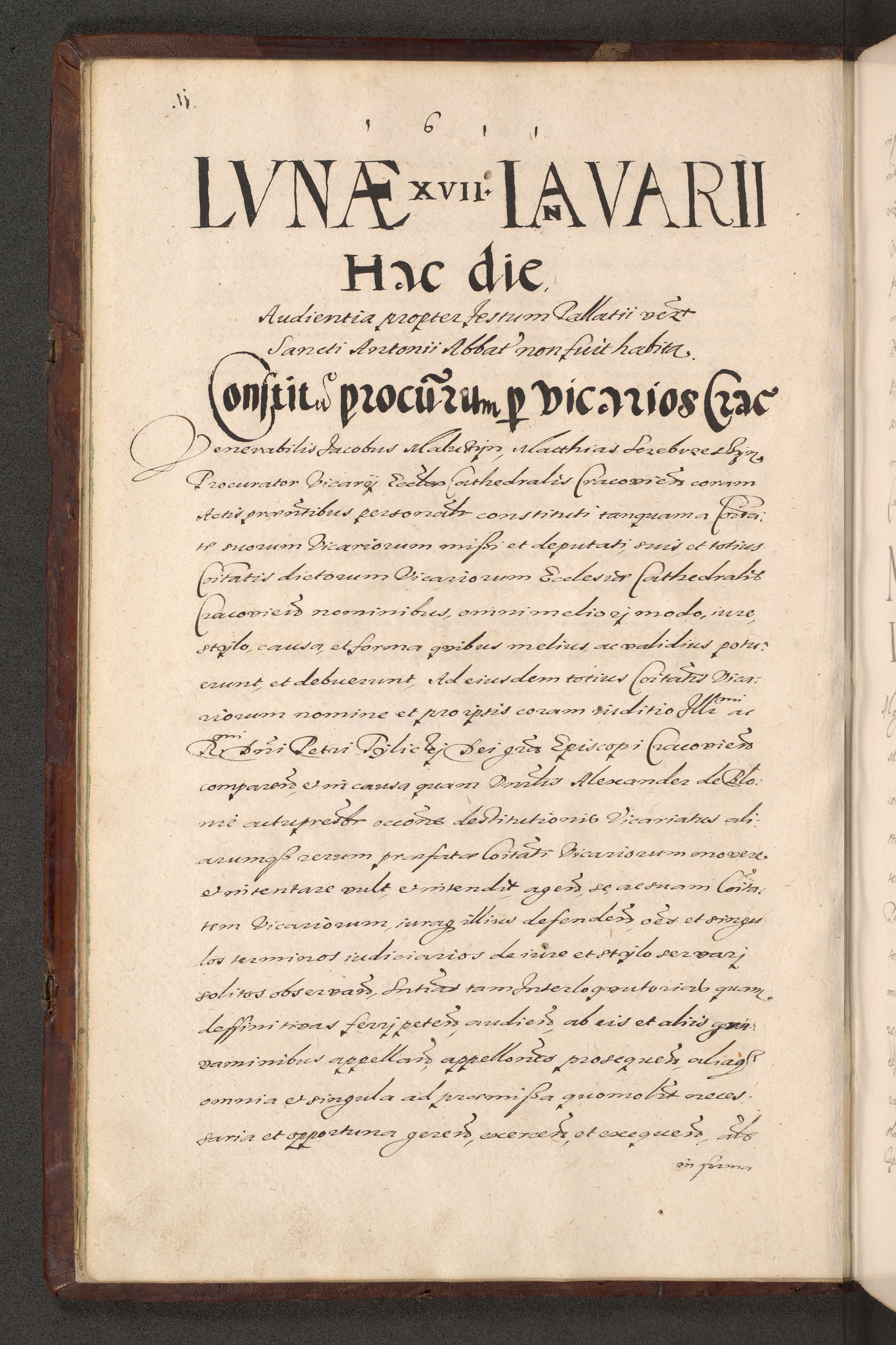 Acta actorum causarum sententiarum tam diffinitiuarum quam interloquutorisrum decretorum obligationum quietationum procuratorum constitutionum etc. etc. coram Reverendo Domino Paulo Dembski Dei et Apostolice Sedis Gratia Episcopalo Dicensis Suffraganeo Canonico Vicario in Spiritualibus et Officiali Generali Cracoviensis ad Annum Domini Millesimum Sexcentesimum Undecimum cuius indictio octava pontificatus Sanctissimi Domini Nostri Domini Pauli Divina Providentia Papae Vti foeliciter continuantur