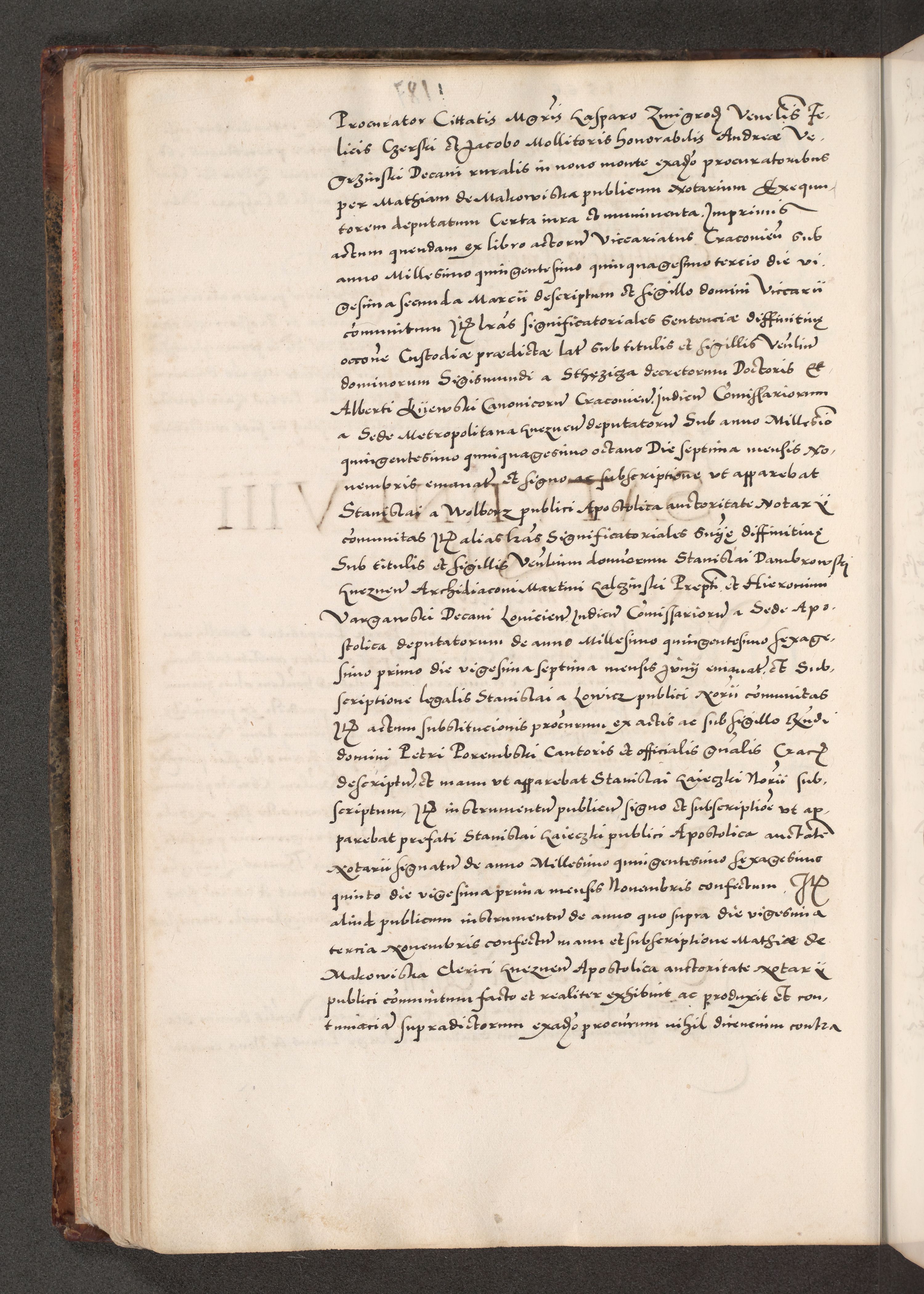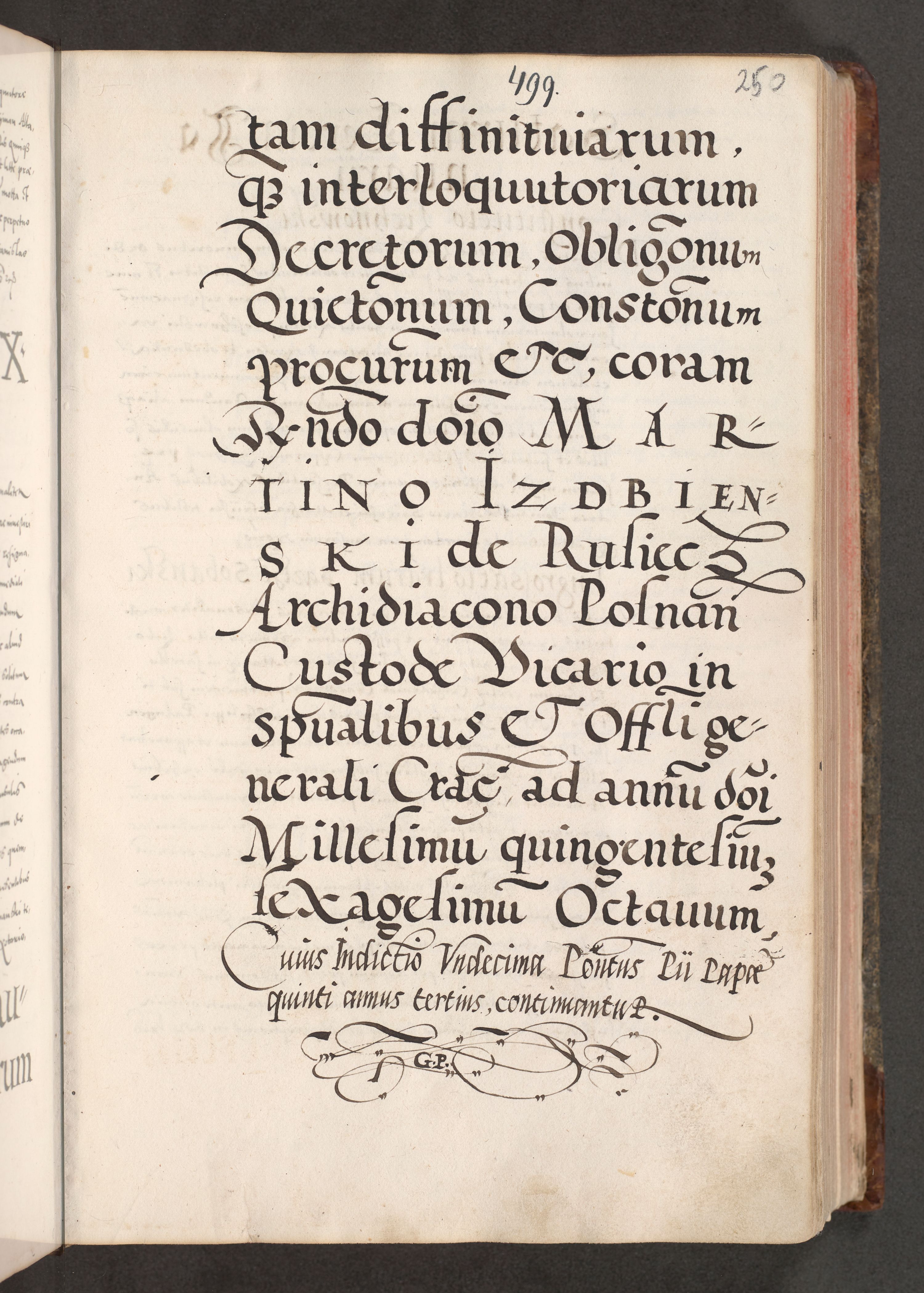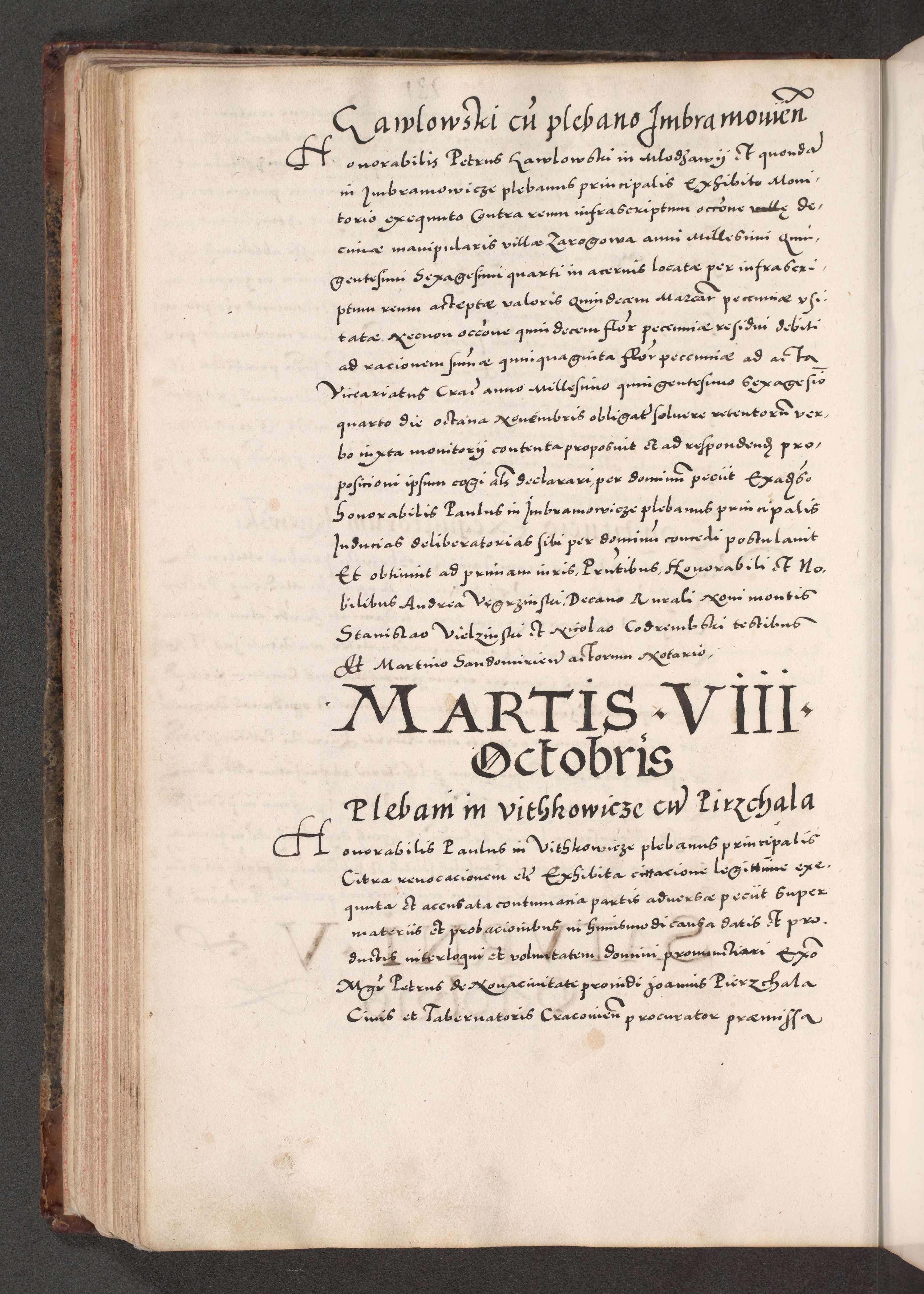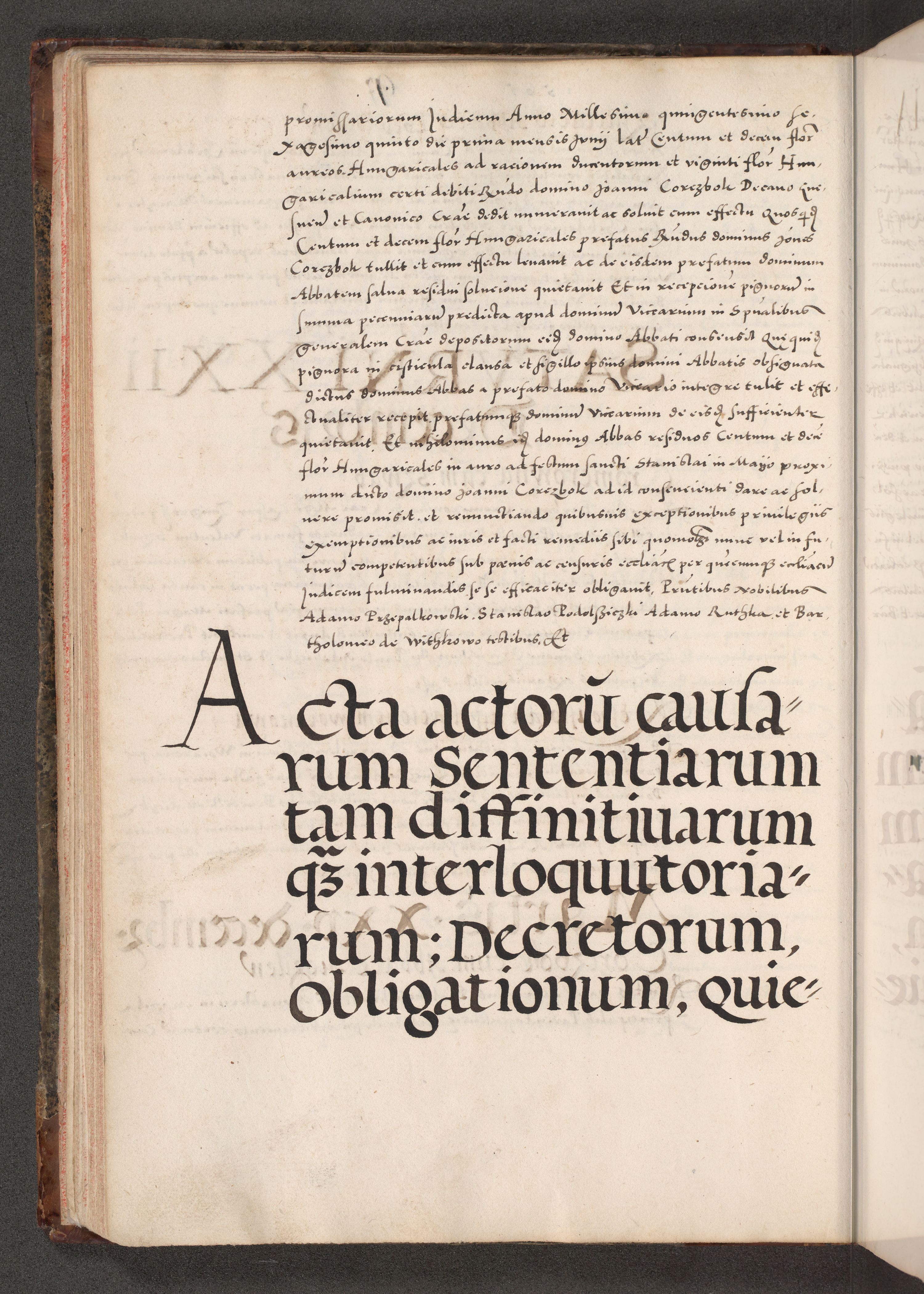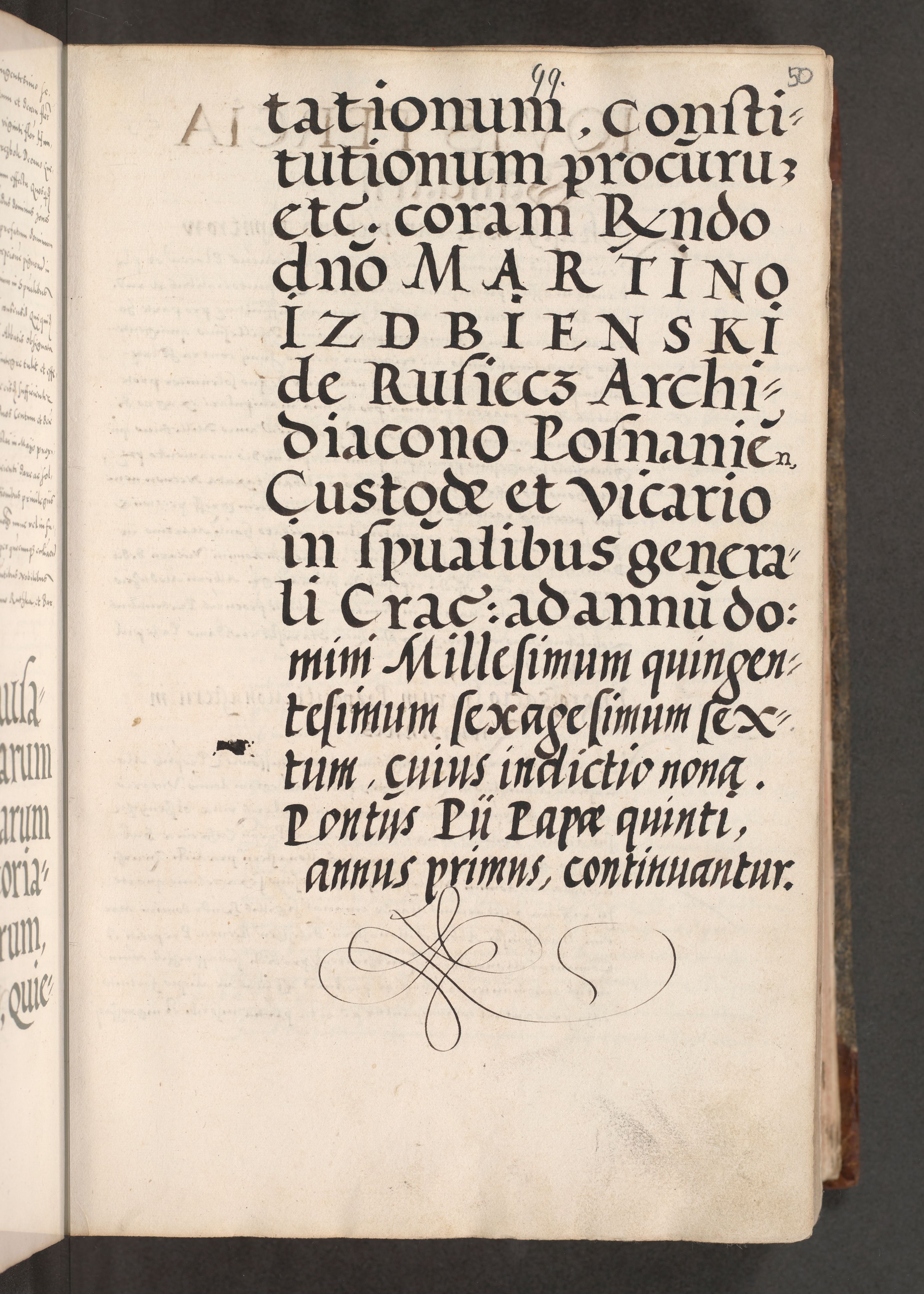 Acta actorum causarum, sententiarum tam diffinitivarum quam interloquutoriarum, decretorum, obligationum, quietationum, constitutionum procuratorum etc. coram reverendo domino Martino Izdbienski de Russiecz archidiacono Posnaniensi, custode et in spiritualibus vicario generali Cracoviensi, ad annum Domini millesimum quingesimum sexagesimum quintum, cuius indictio octava, pontificatus Pii pape, annus sextus, continuantur