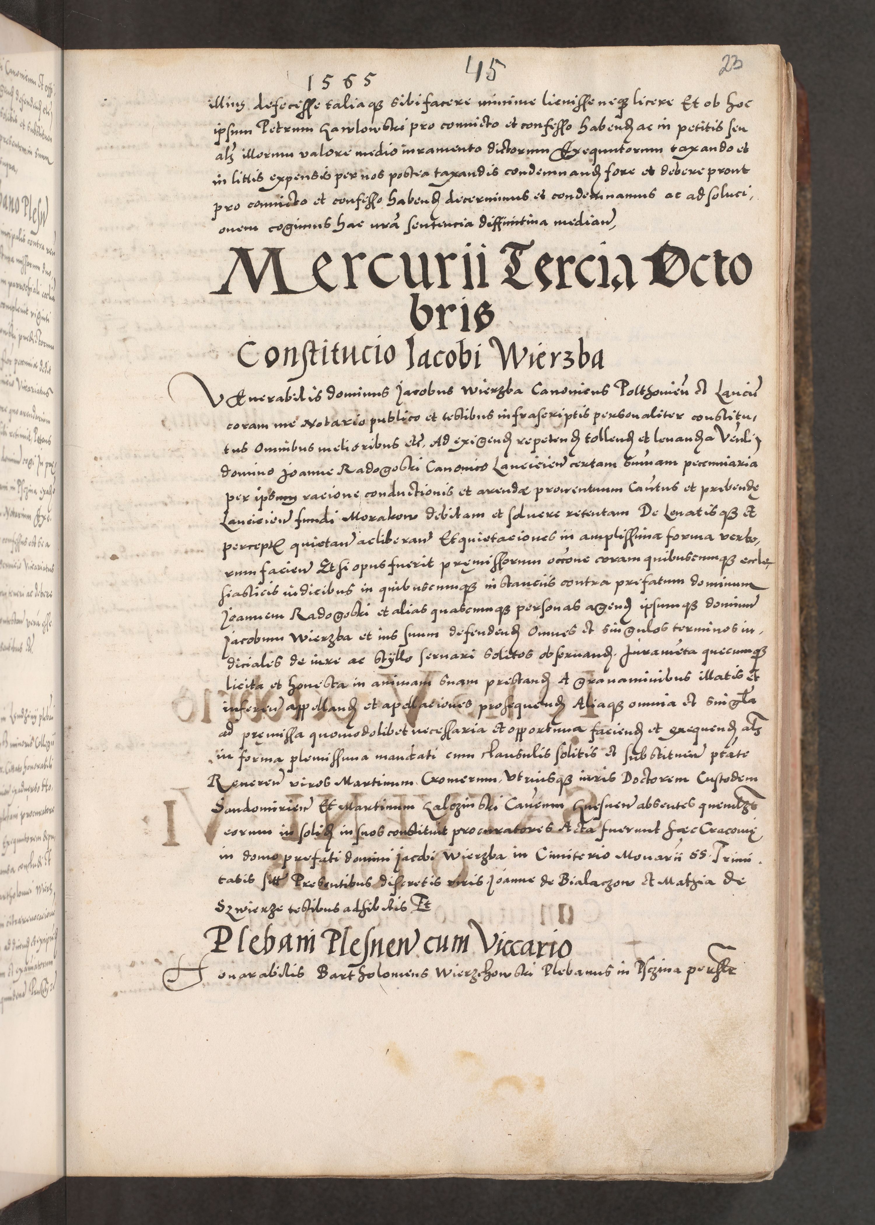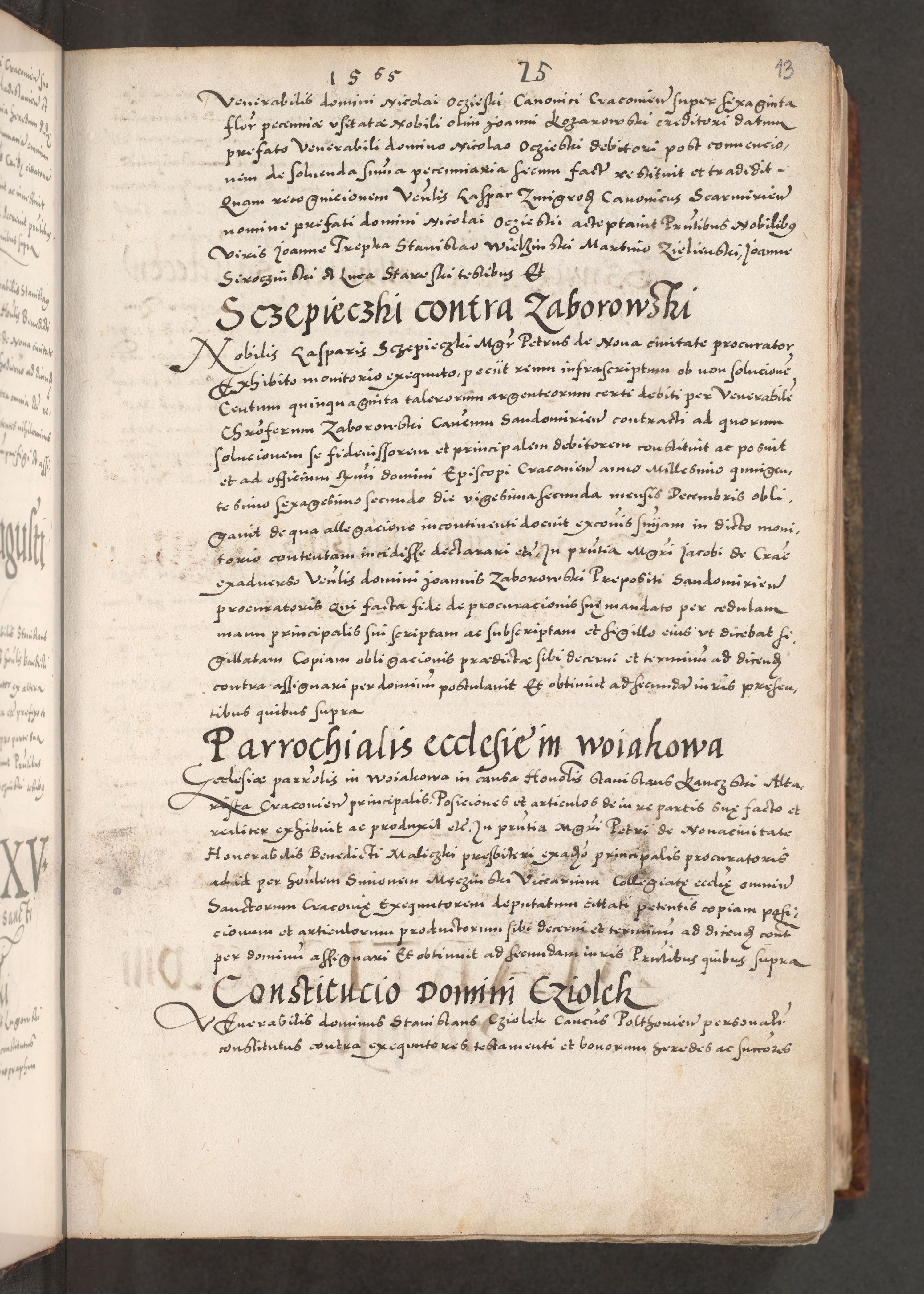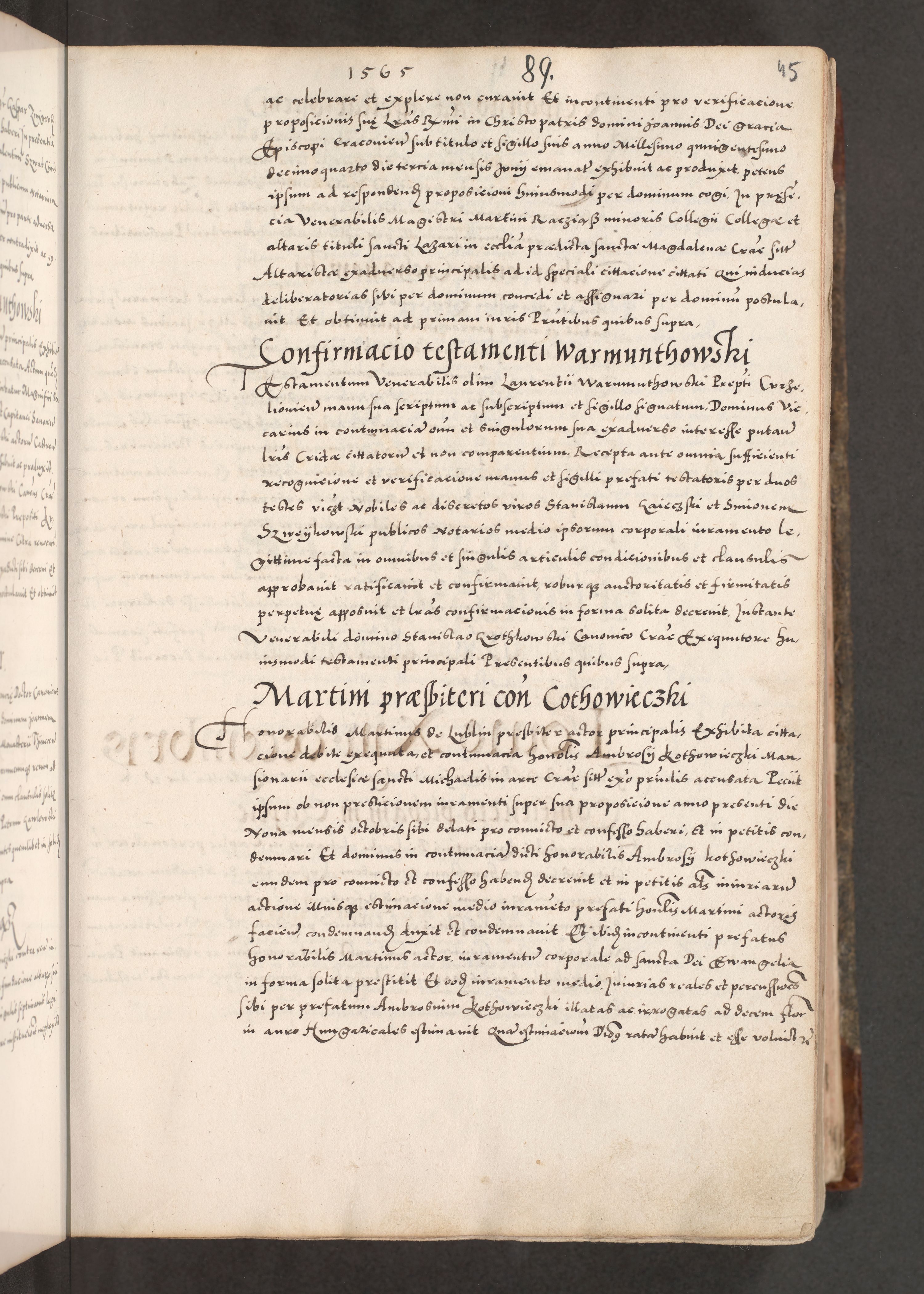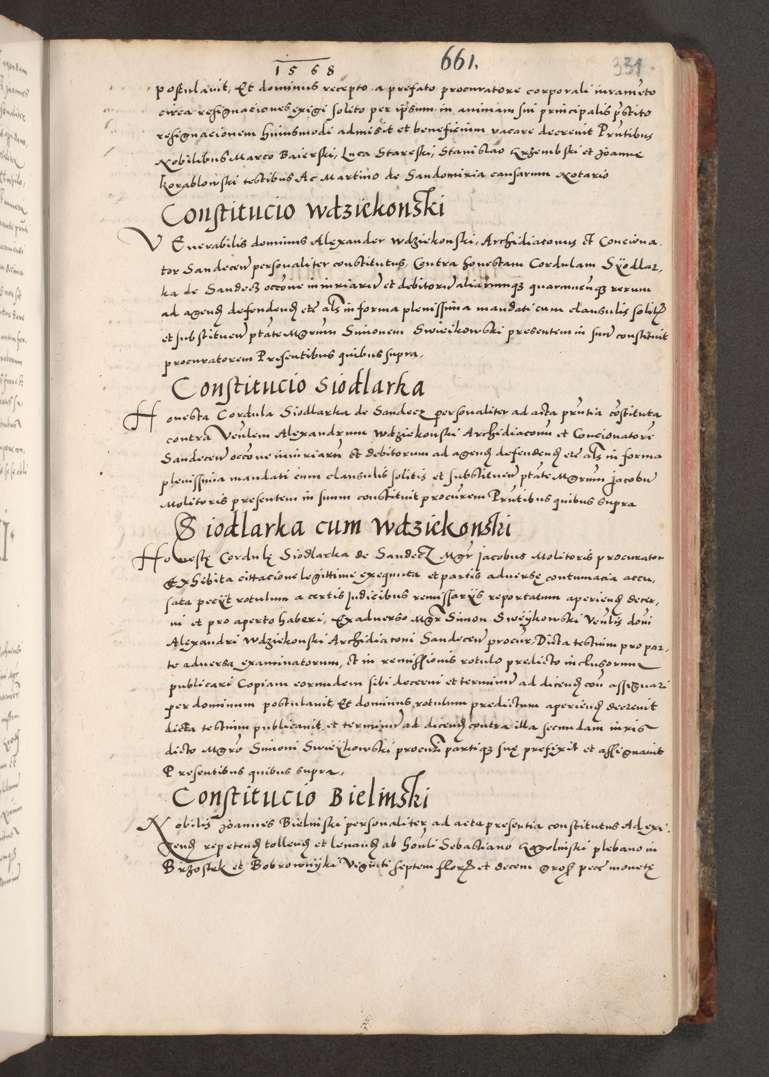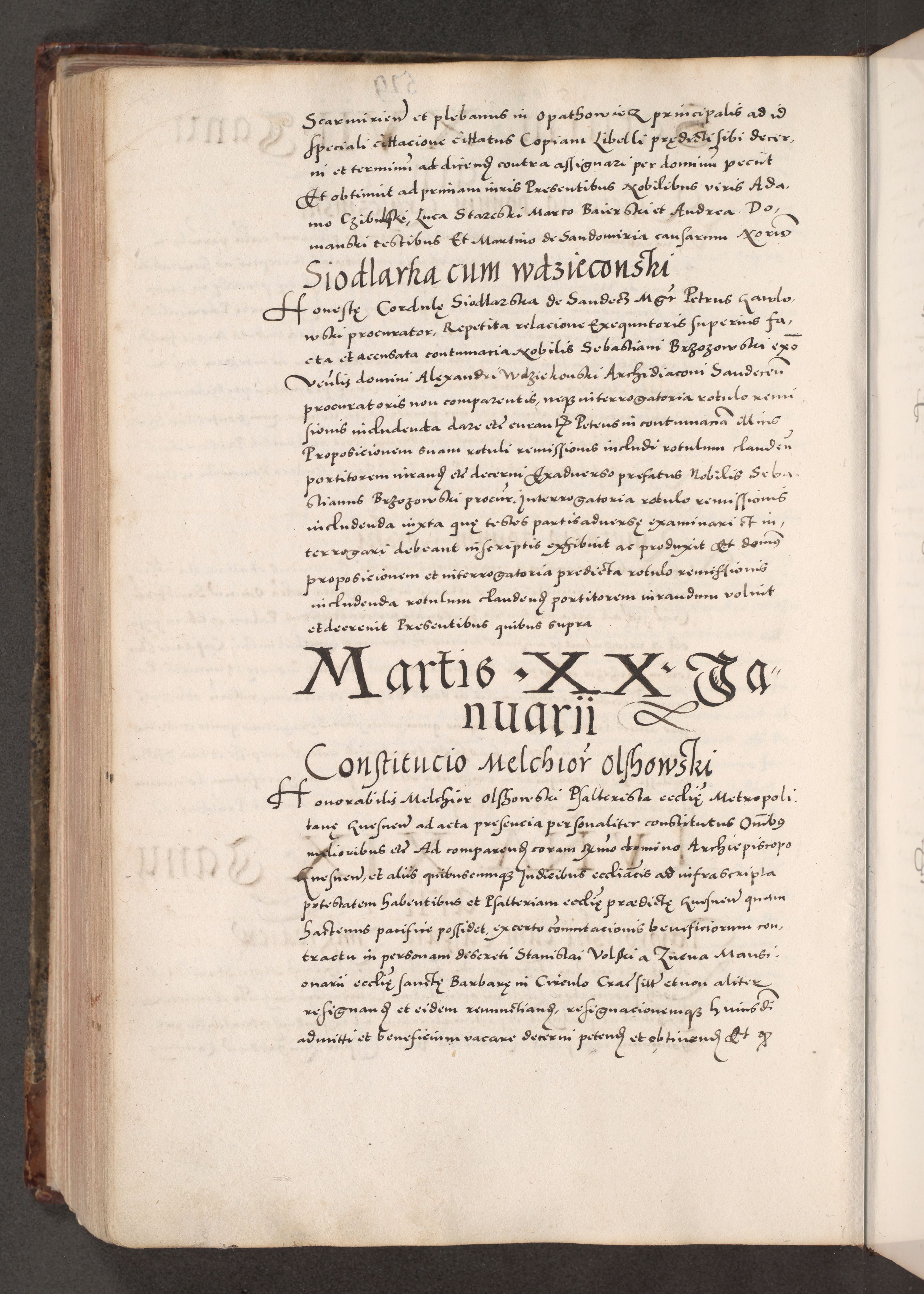 Acta actorum causarum, sententiarum tam diffinitivarum quam interloquutoriarum, decretorum, obligationum, quietationum, constitutionum procuratorum etc. coram reverendo domino Martino Izdbienski de Russiecz archidiacono Posnaniensi, custode et in spiritualibus vicario generali Cracoviensi, ad annum Domini millesimum quingesimum sexagesimum quintum, cuius indictio octava, pontificatus Pii pape, annus sextus, continuantur