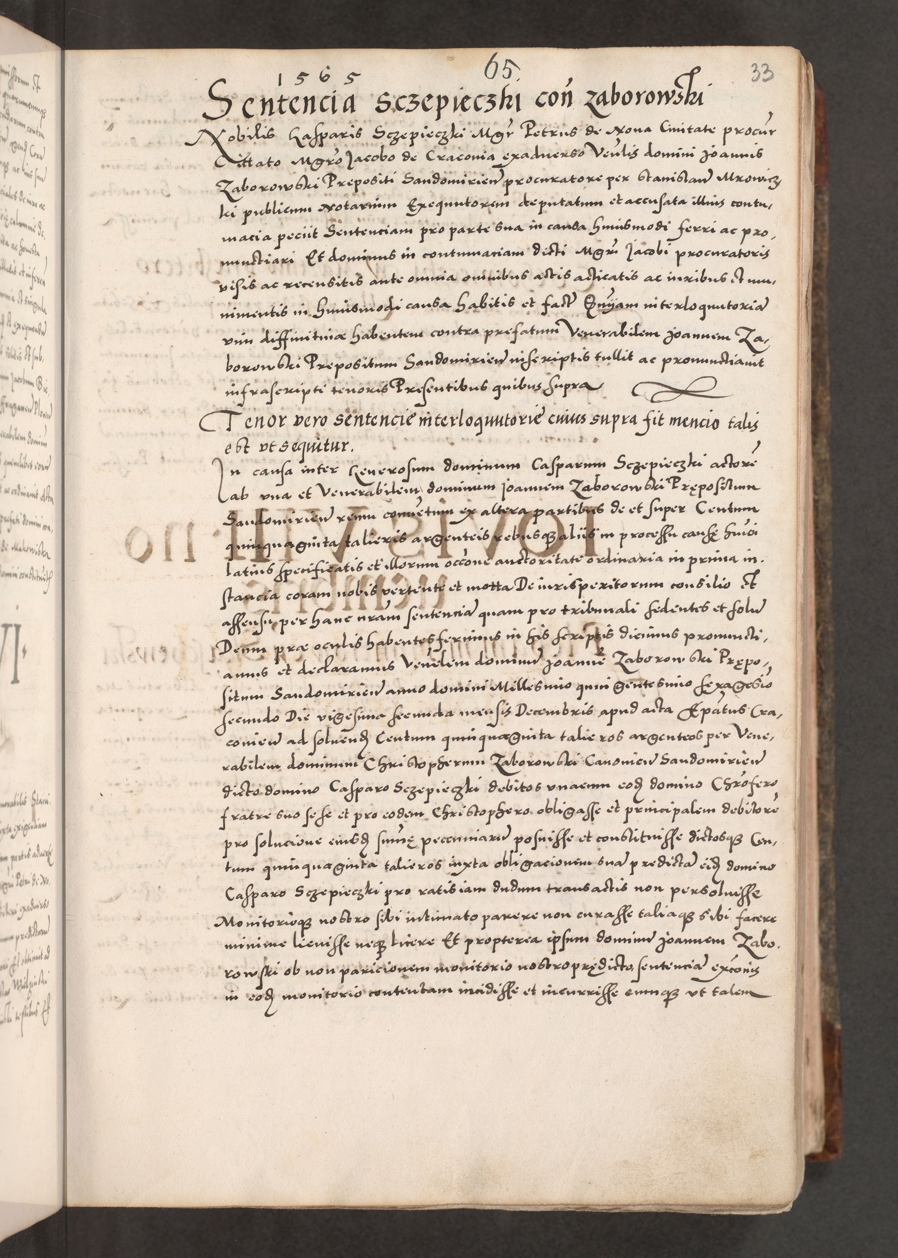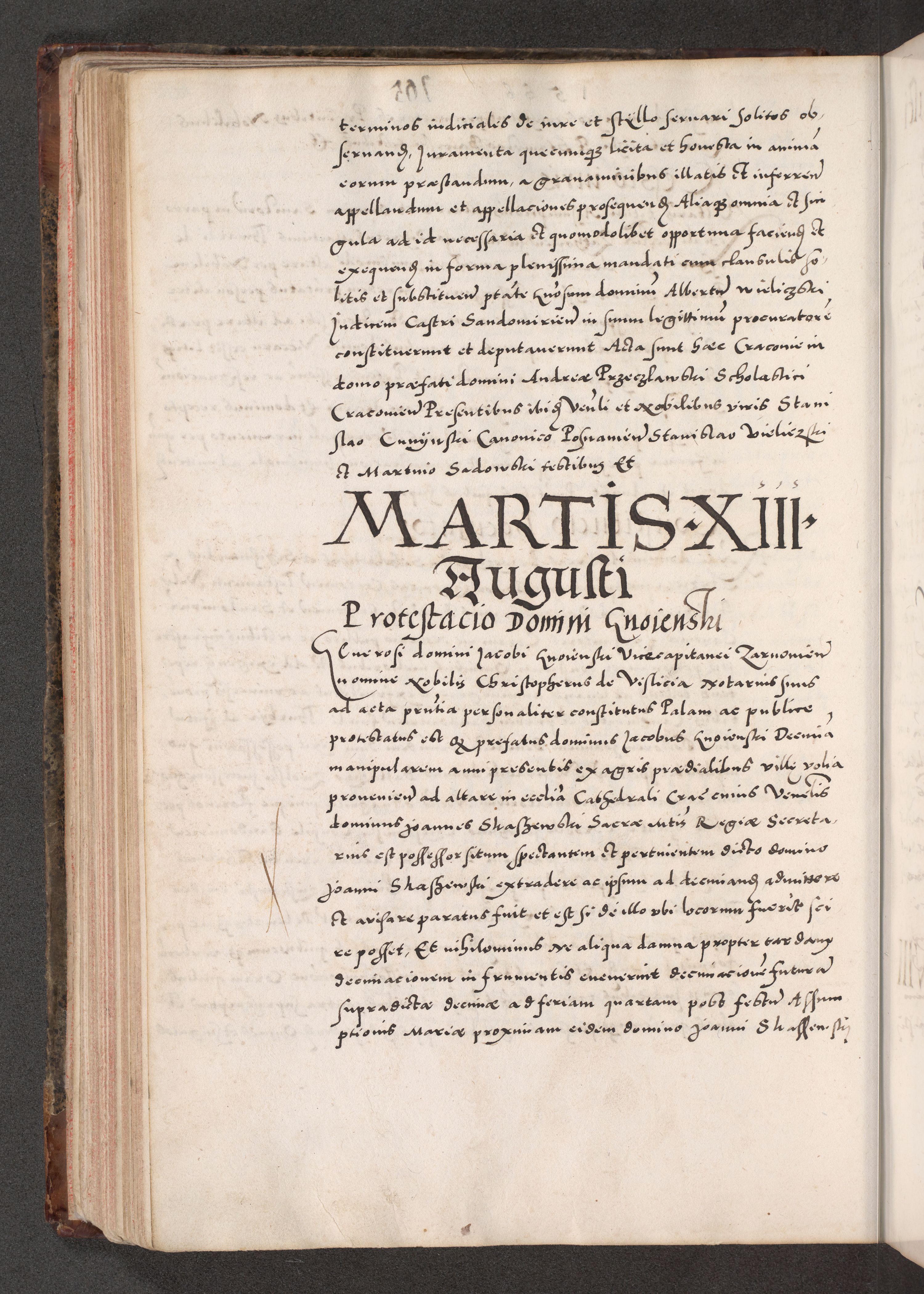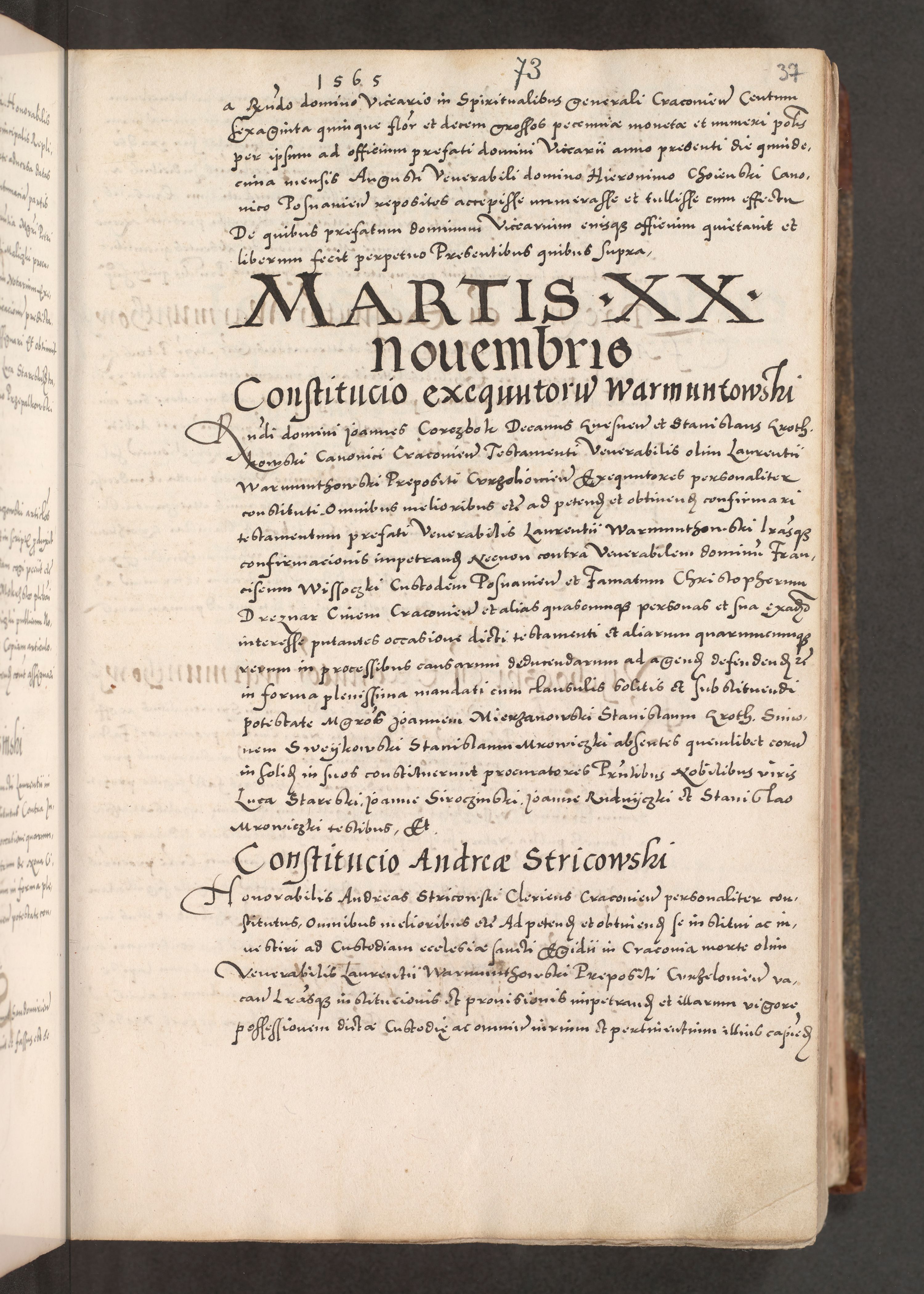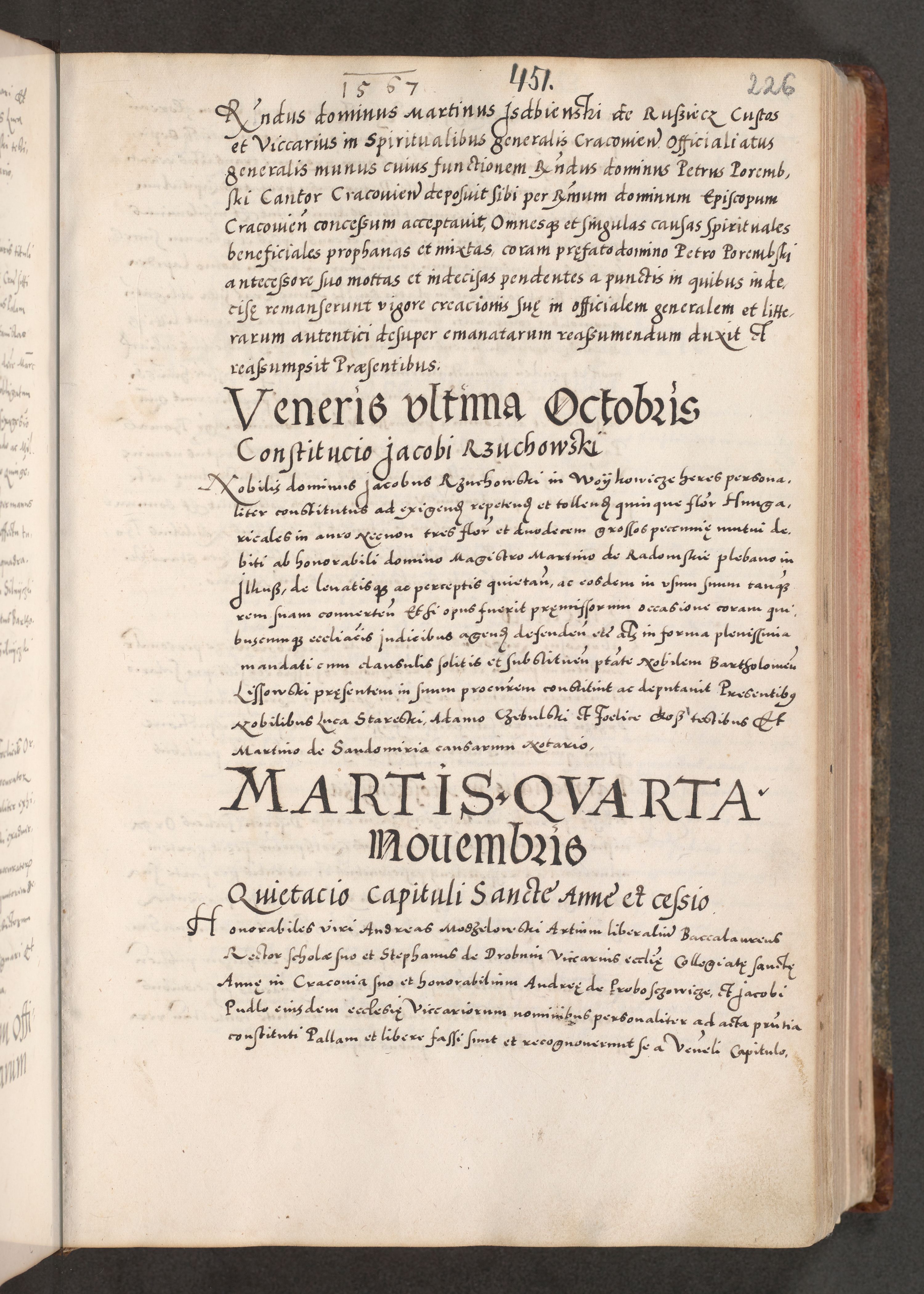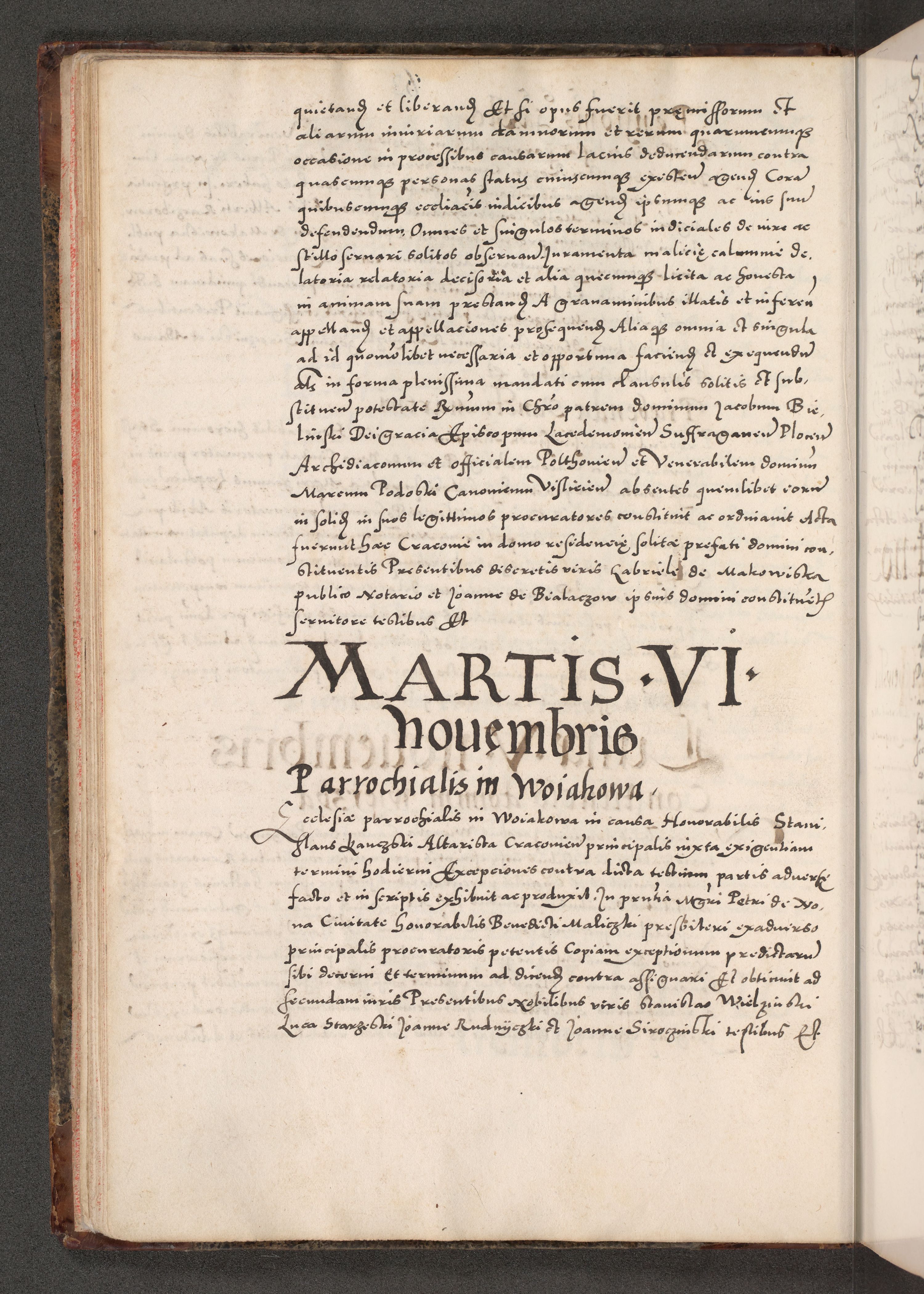 Acta actorum causarum, sententiarum tam diffinitivarum quam interloquutoriarum, decretorum, obligationum, quietationum, constitutionum procuratorum etc. coram reverendo domino Martino Izdbienski de Russiecz archidiacono Posnaniensi, custode et in spiritualibus vicario generali Cracoviensi, ad annum Domini millesimum quingesimum sexagesimum quintum, cuius indictio octava, pontificatus Pii pape, annus sextus, continuantur