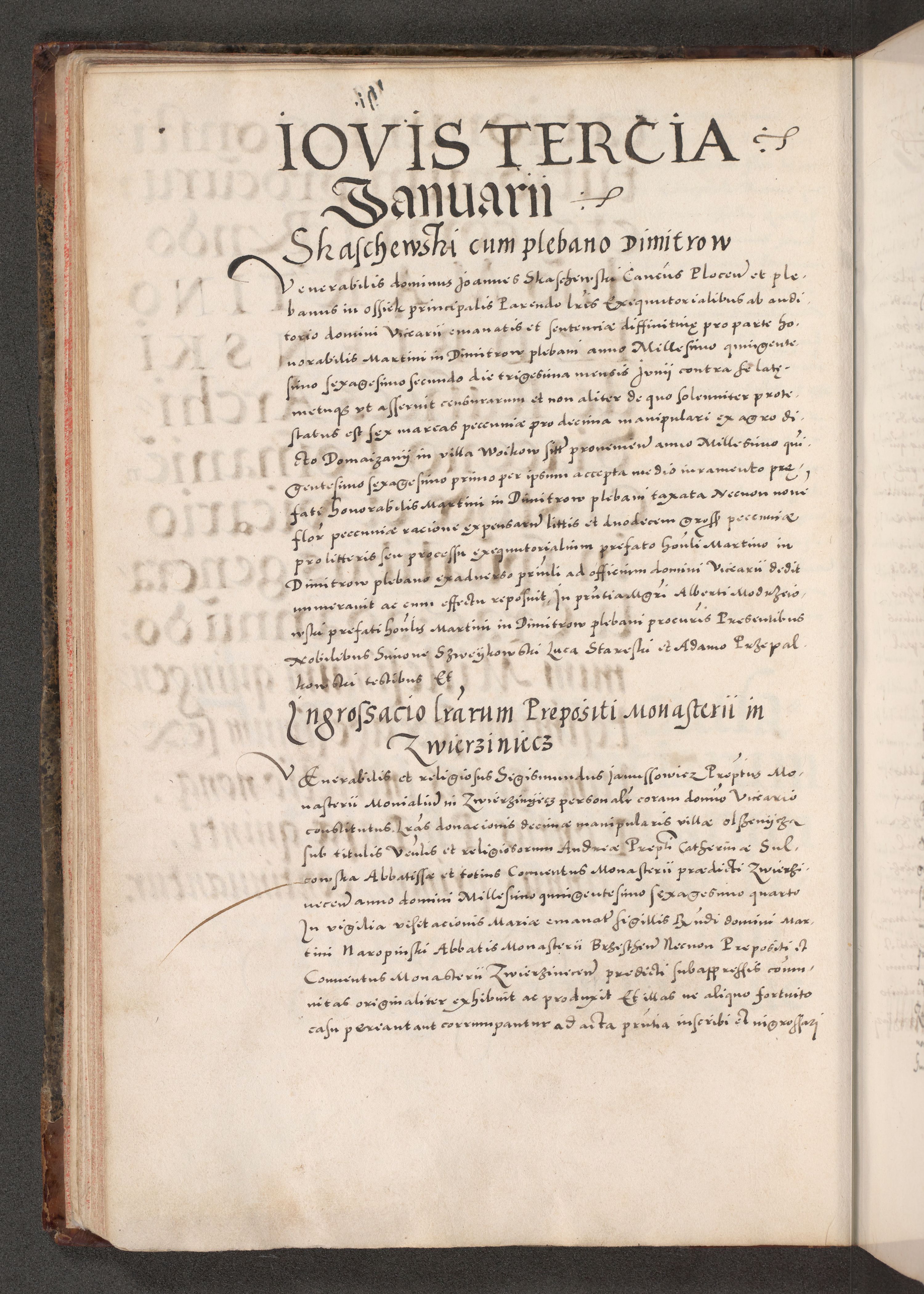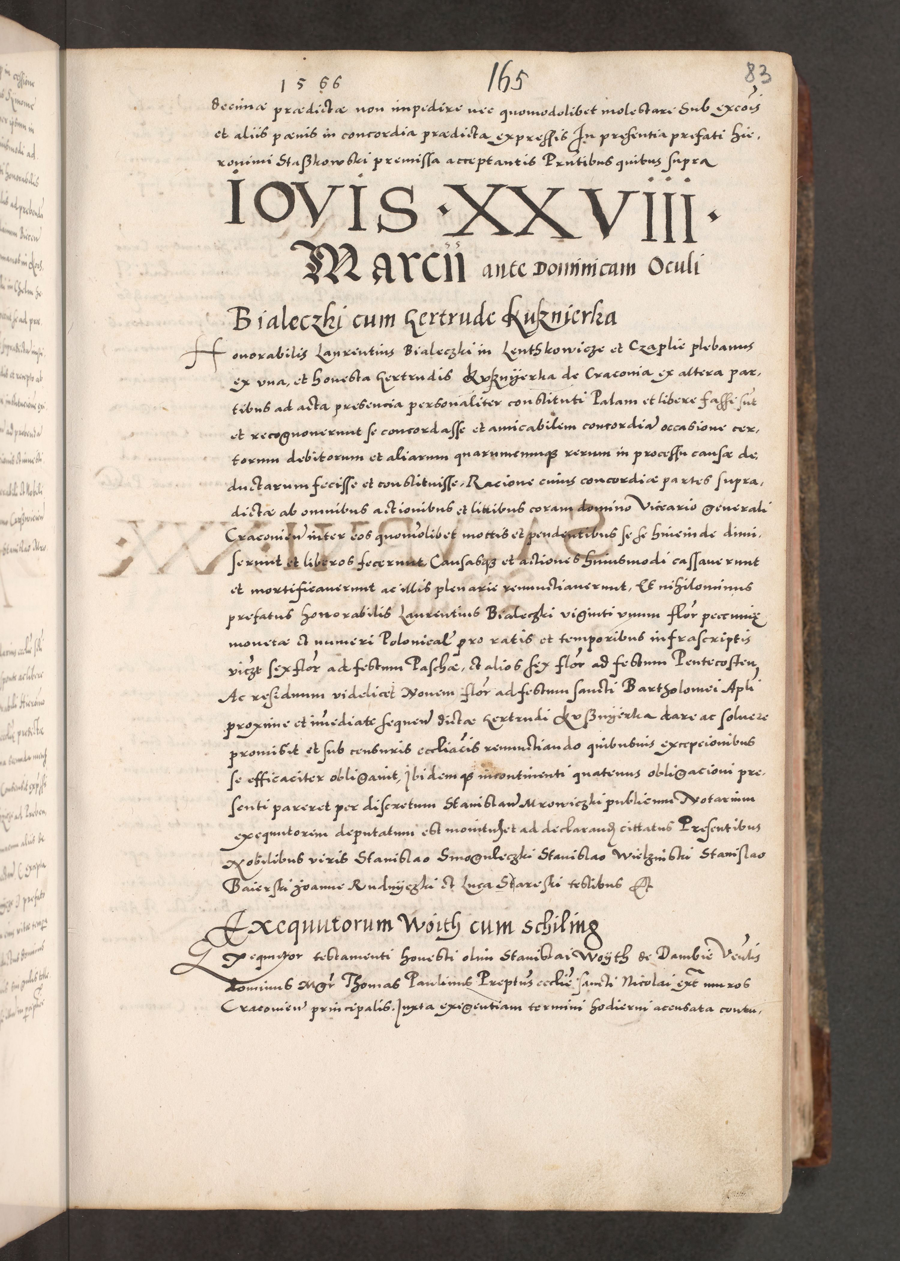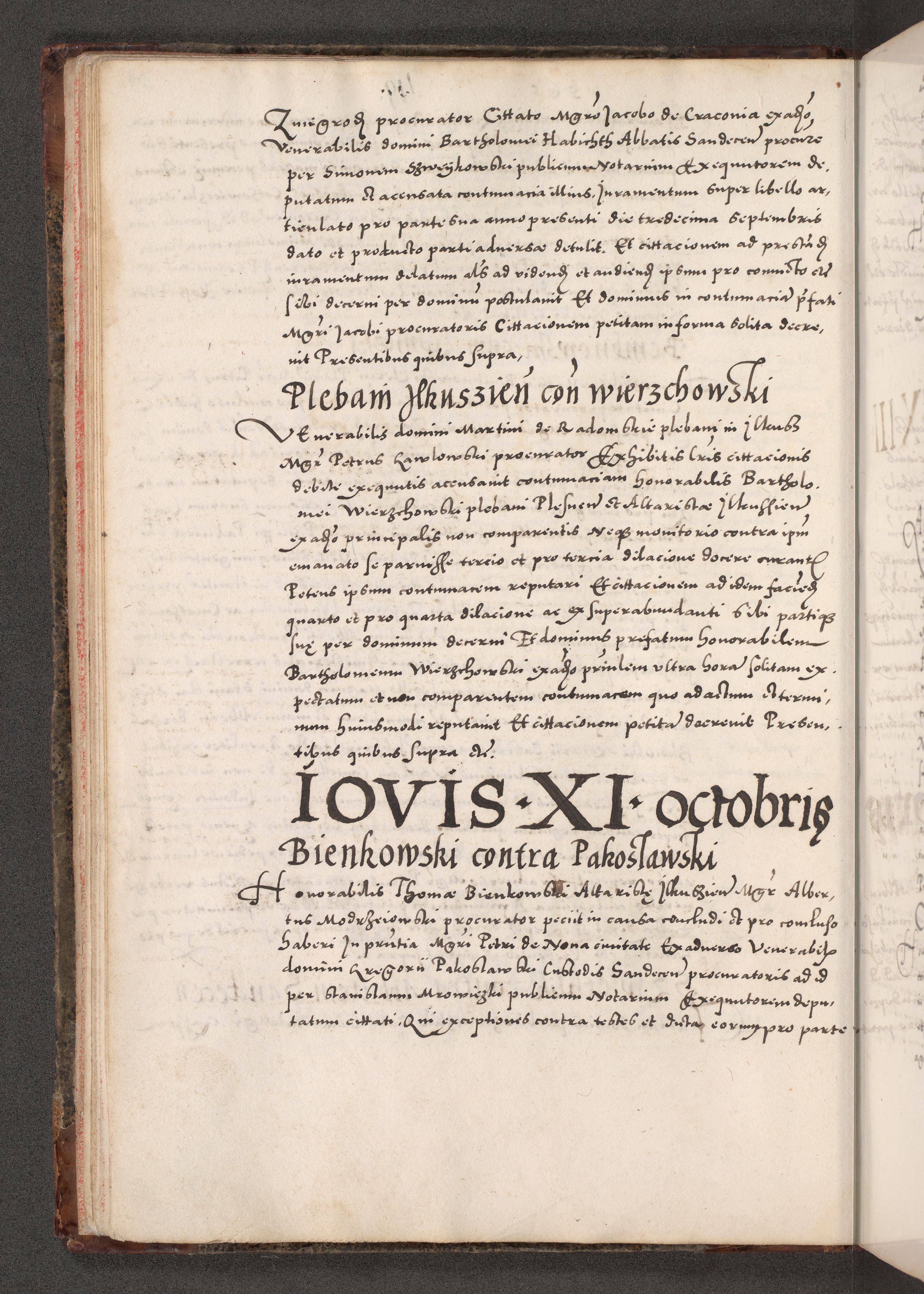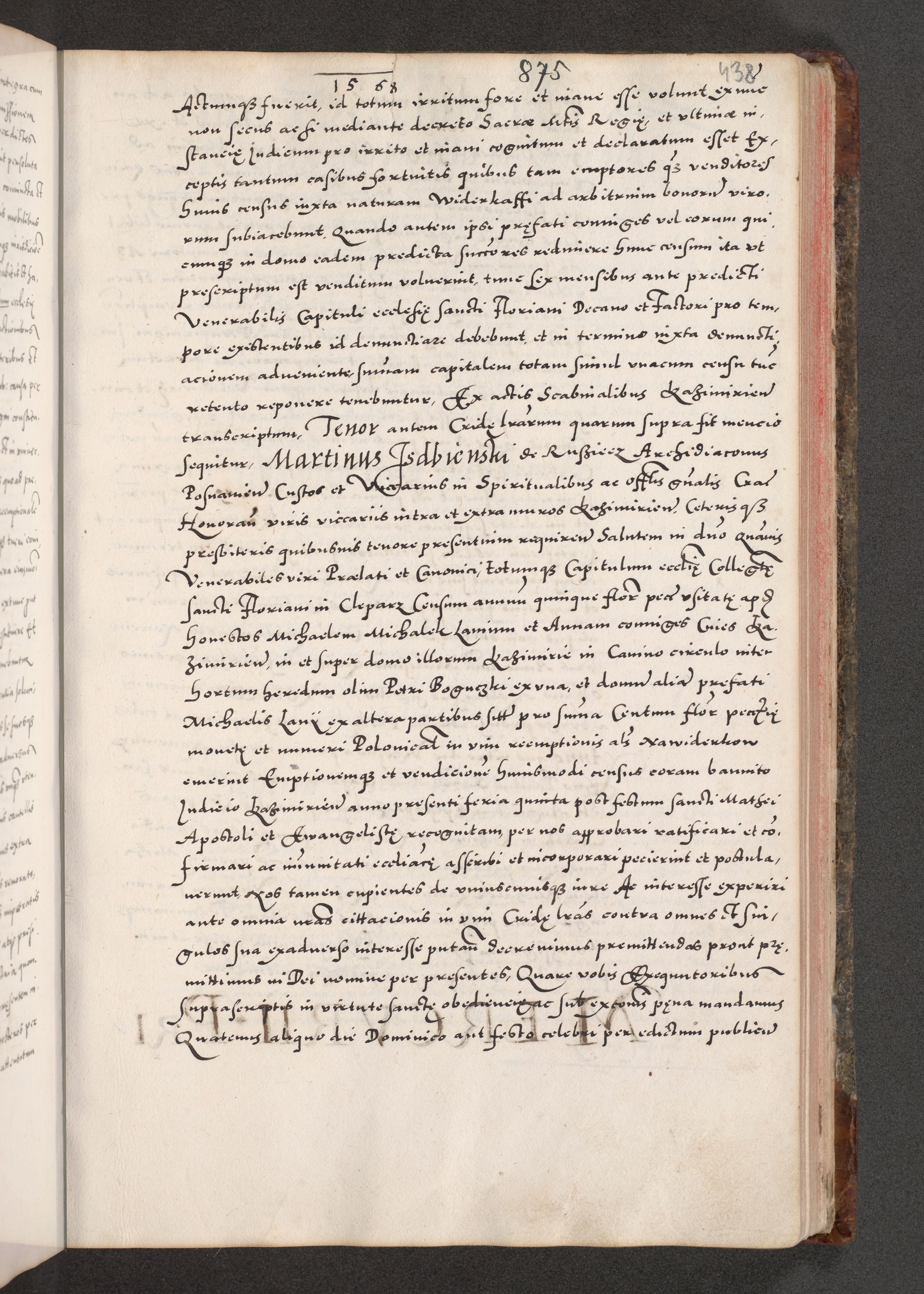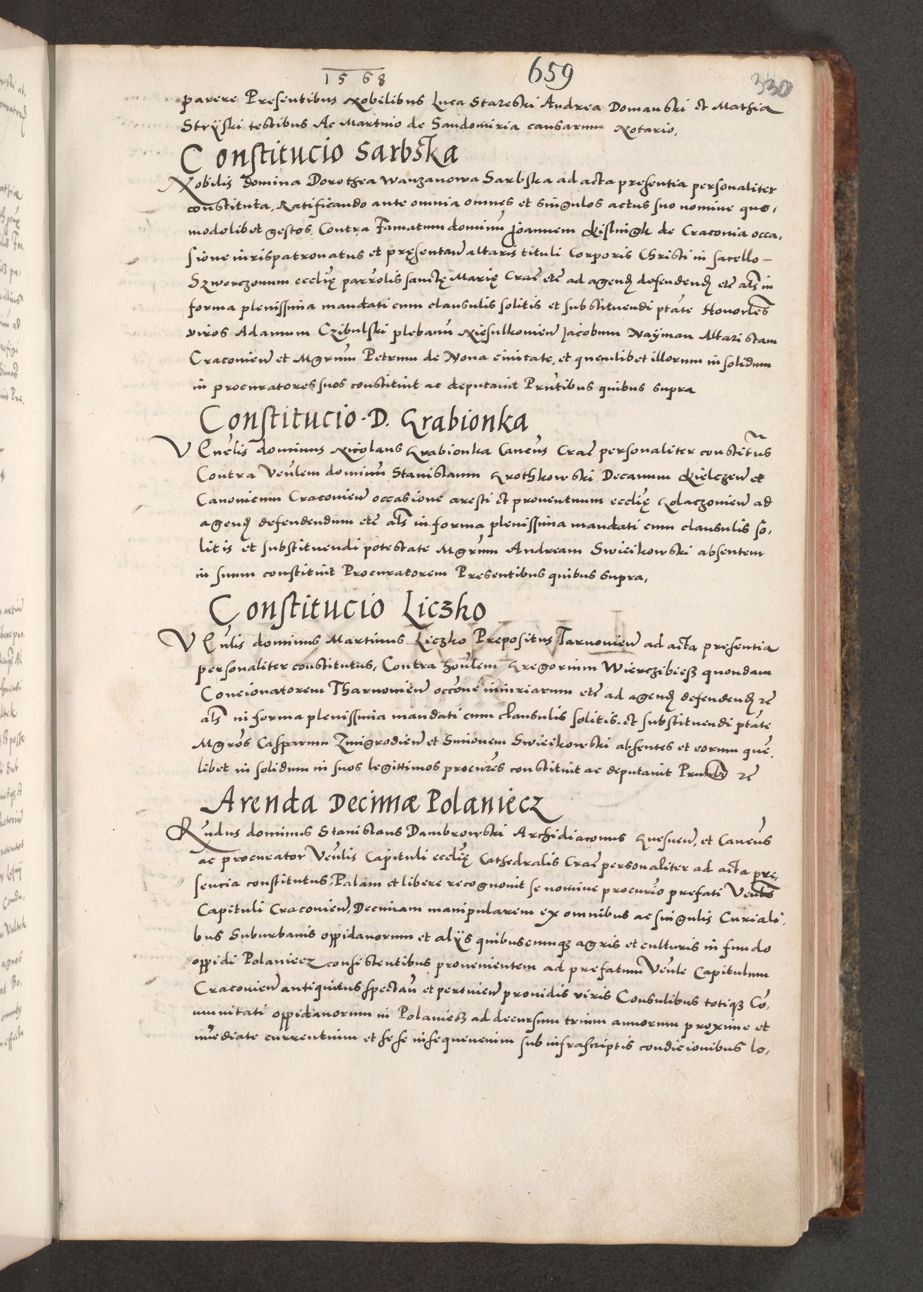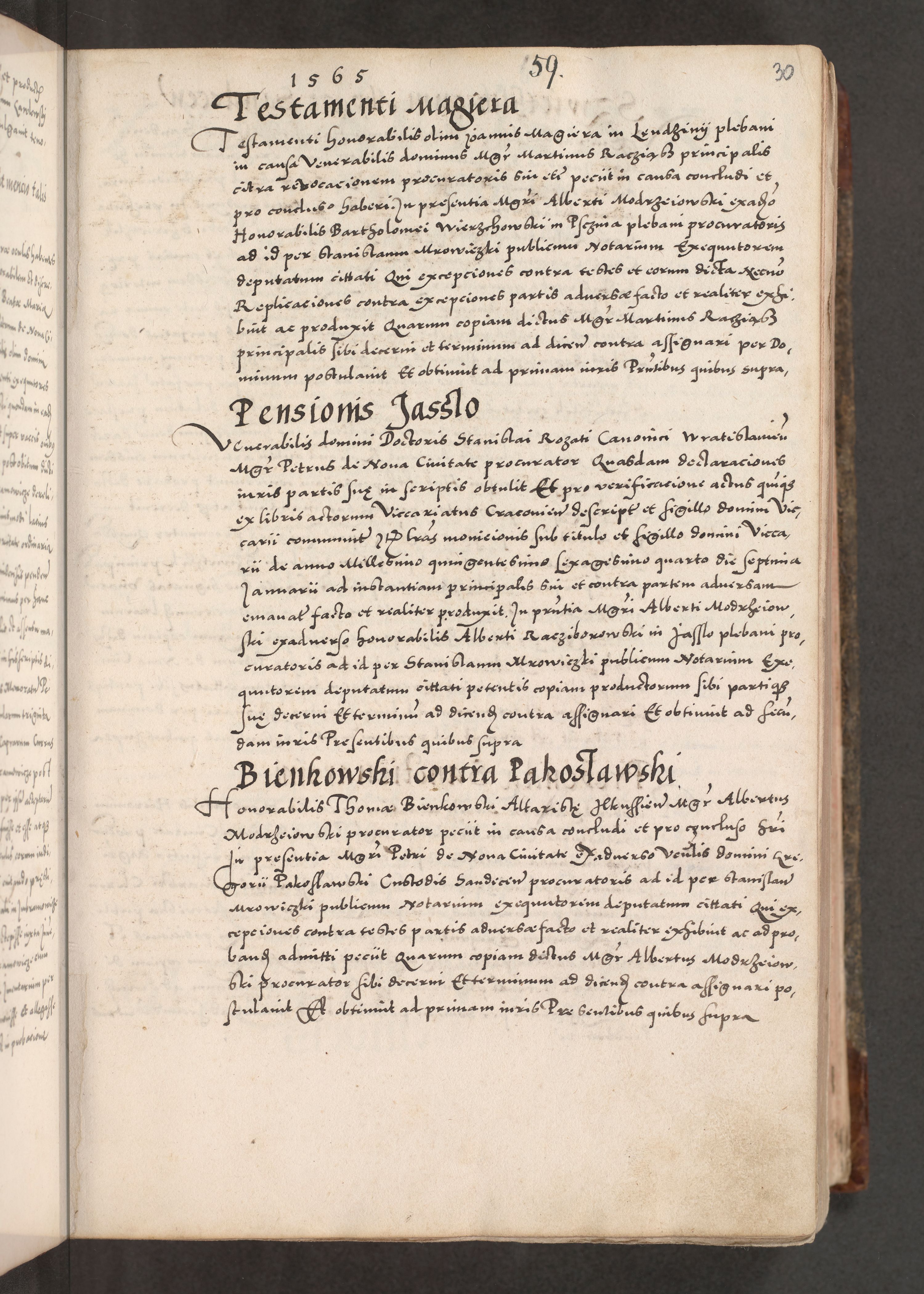 Acta actorum causarum, sententiarum tam diffinitivarum quam interloquutoriarum, decretorum, obligationum, quietationum, constitutionum procuratorum etc. coram reverendo domino Martino Izdbienski de Russiecz archidiacono Posnaniensi, custode et in spiritualibus vicario generali Cracoviensi, ad annum Domini millesimum quingesimum sexagesimum quintum, cuius indictio octava, pontificatus Pii pape, annus sextus, continuantur