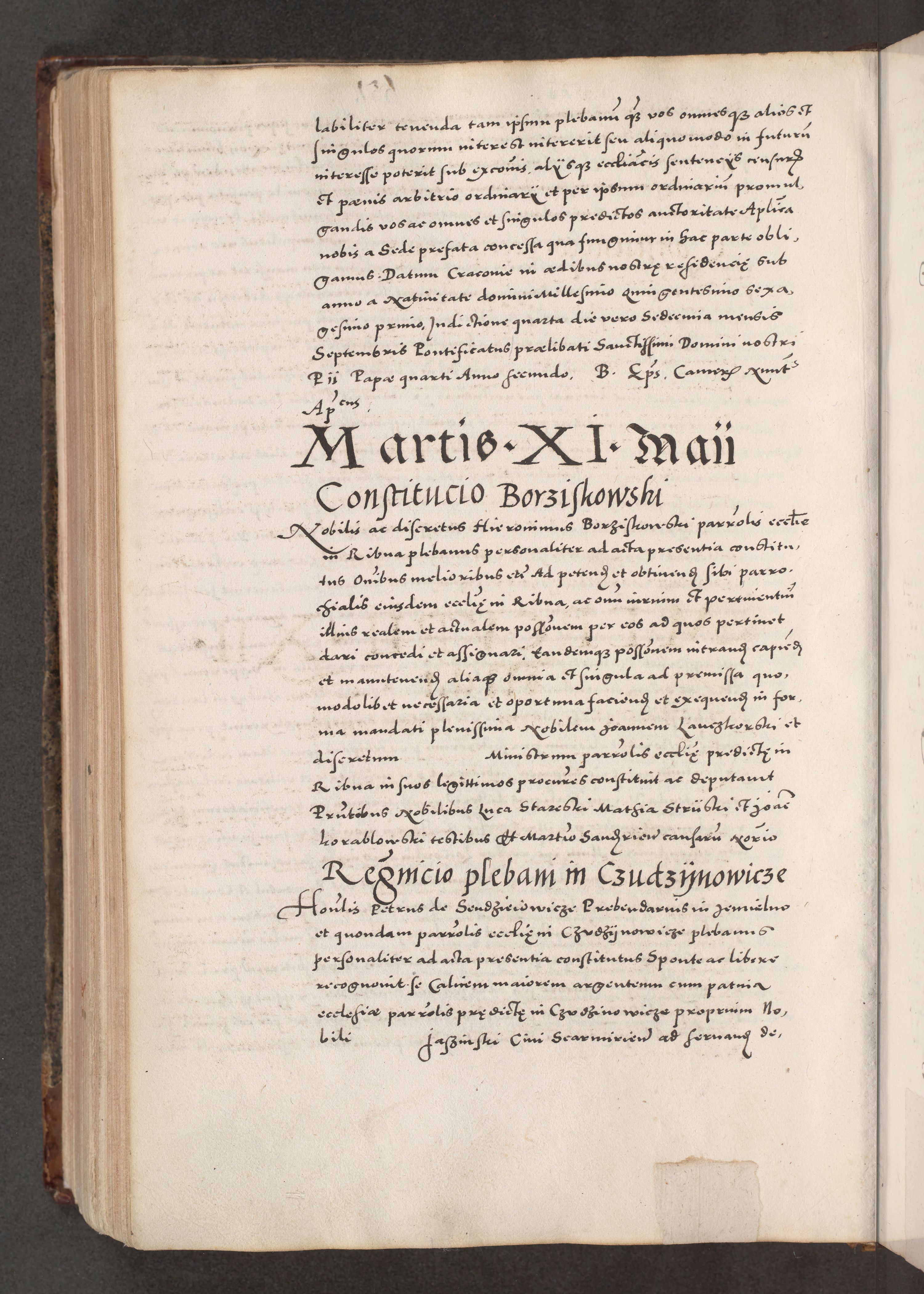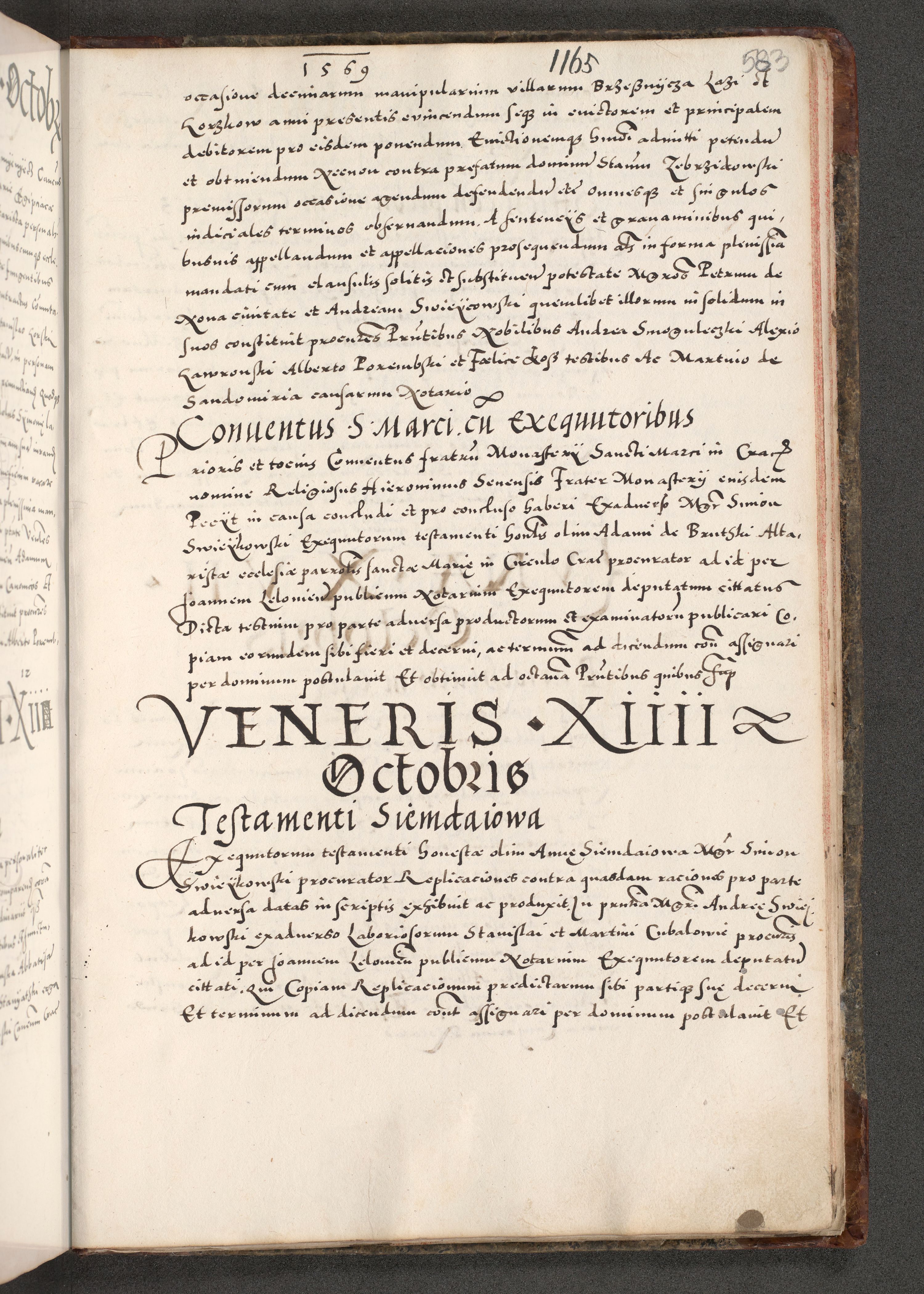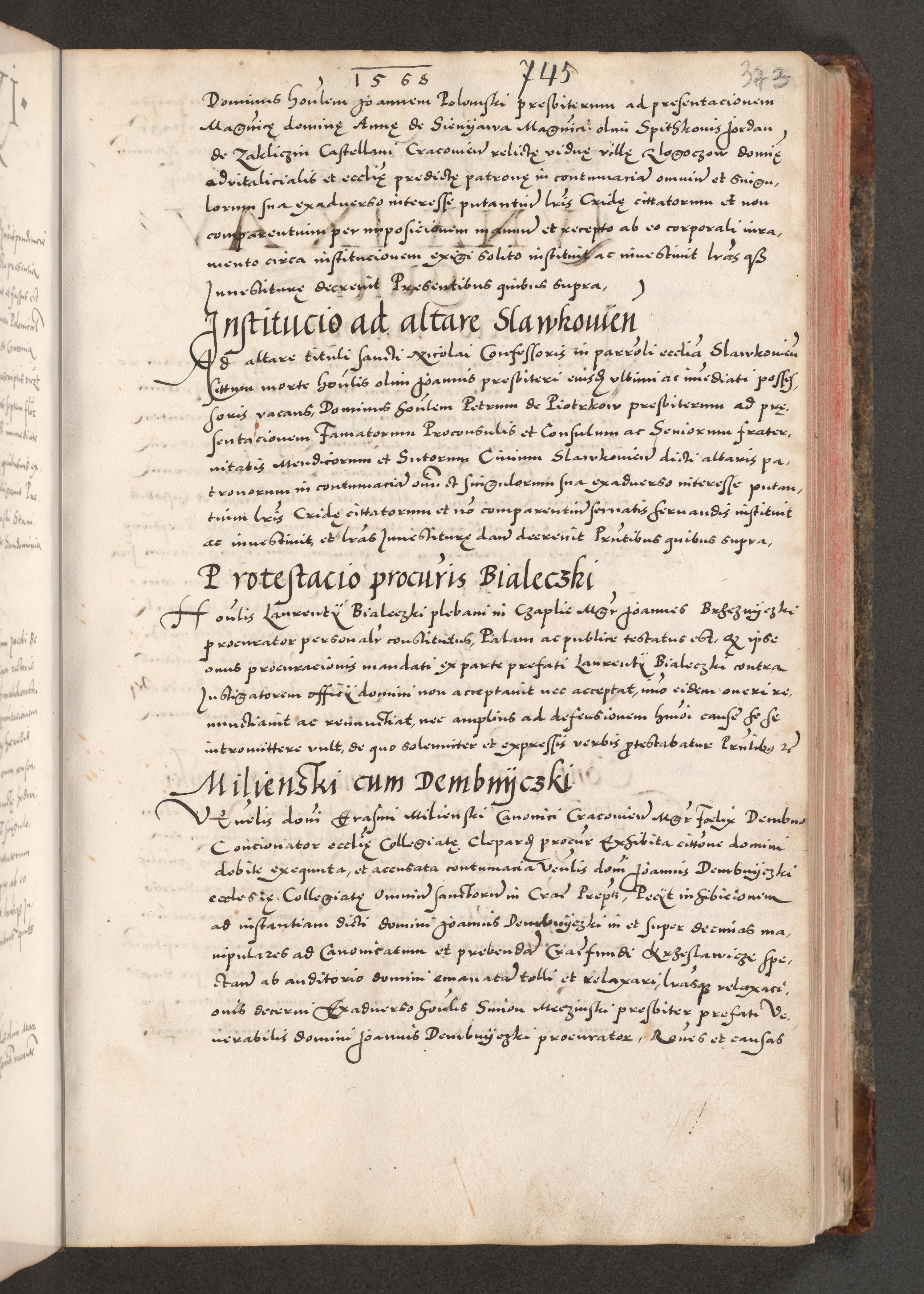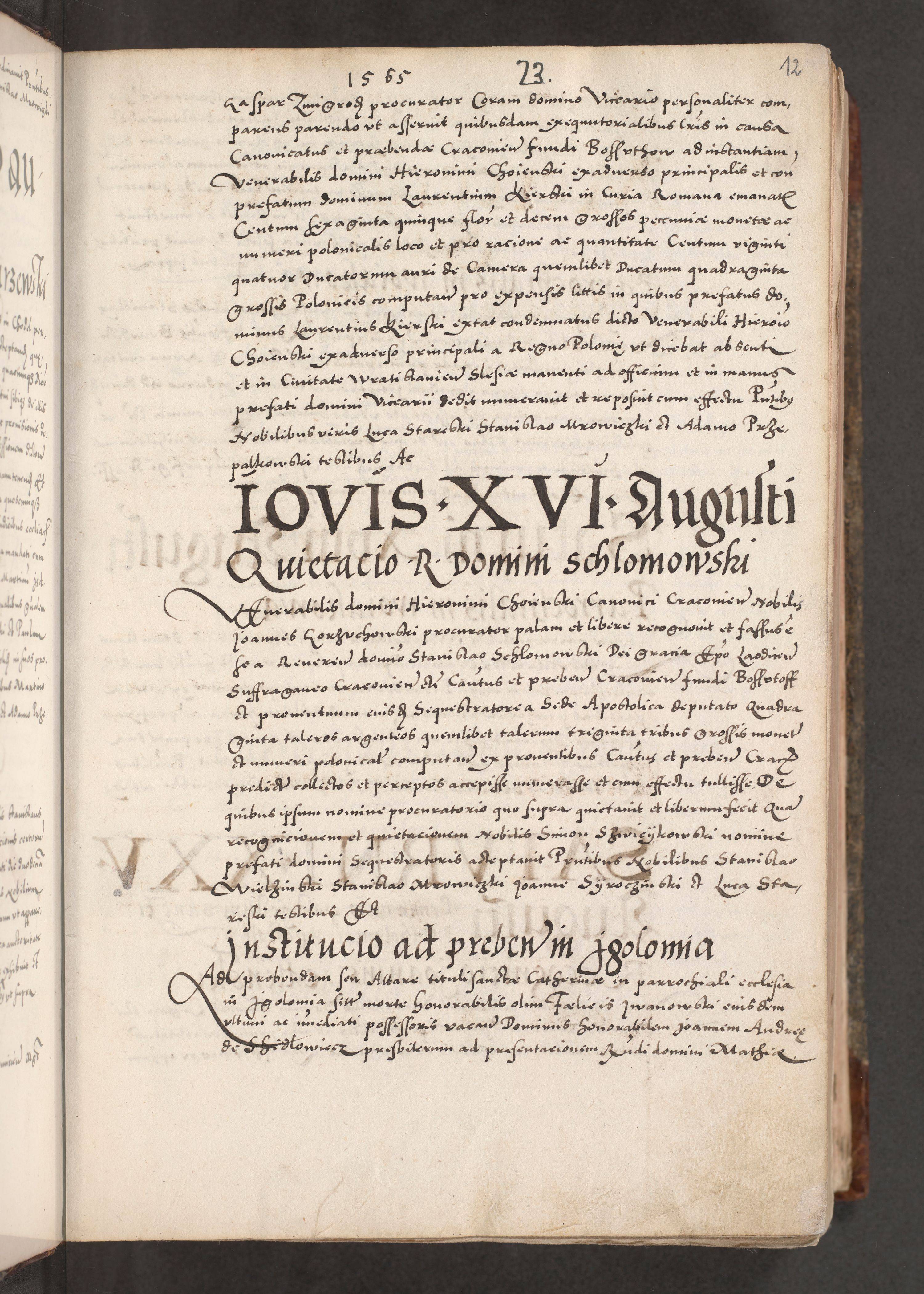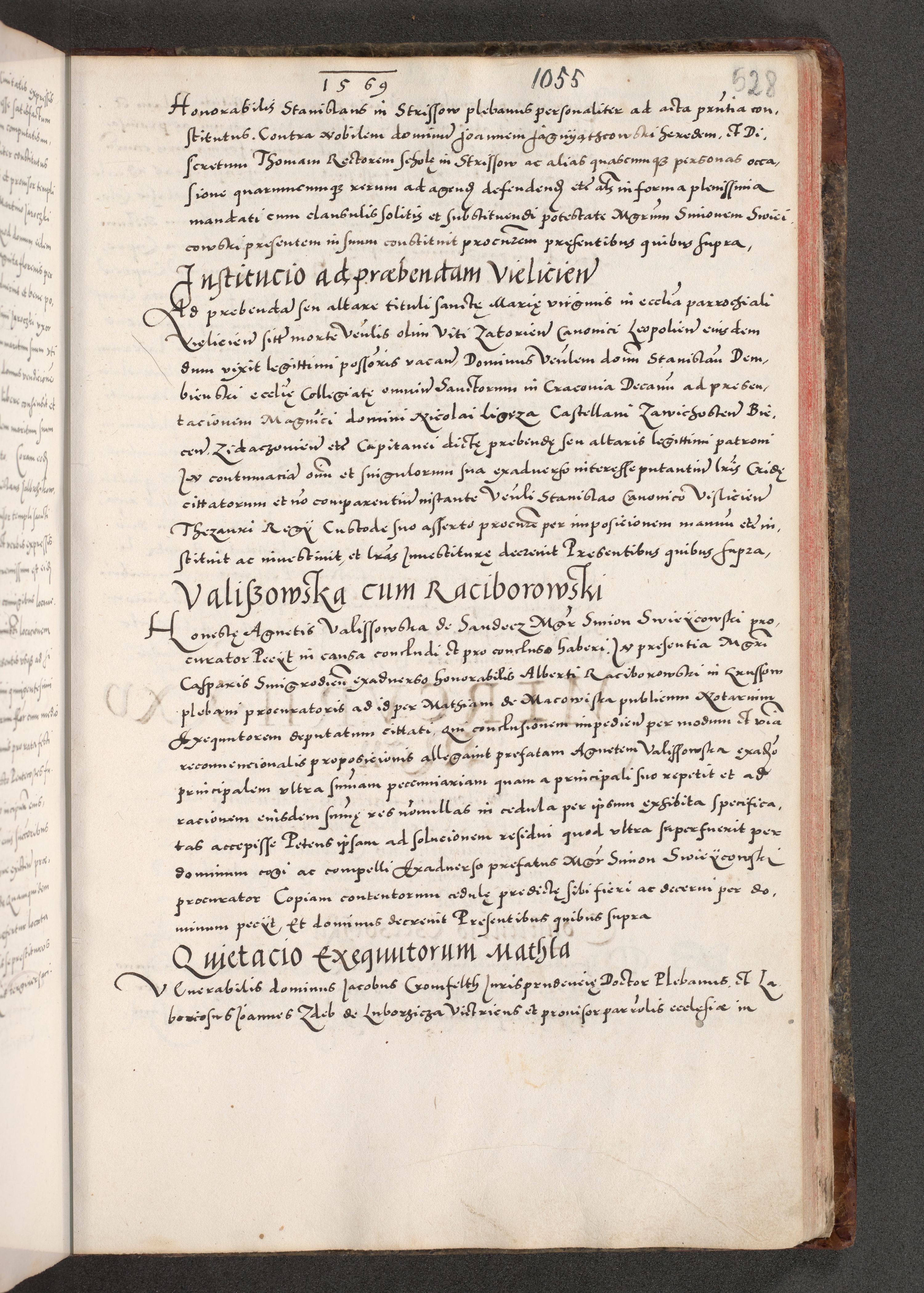 Acta actorum causarum, sententiarum tam diffinitivarum quam interloquutoriarum, decretorum, obligationum, quietationum, constitutionum procuratorum etc. coram reverendo domino Martino Izdbienski de Russiecz archidiacono Posnaniensi, custode et in spiritualibus vicario generali Cracoviensi, ad annum Domini millesimum quingesimum sexagesimum quintum, cuius indictio octava, pontificatus Pii pape, annus sextus, continuantur