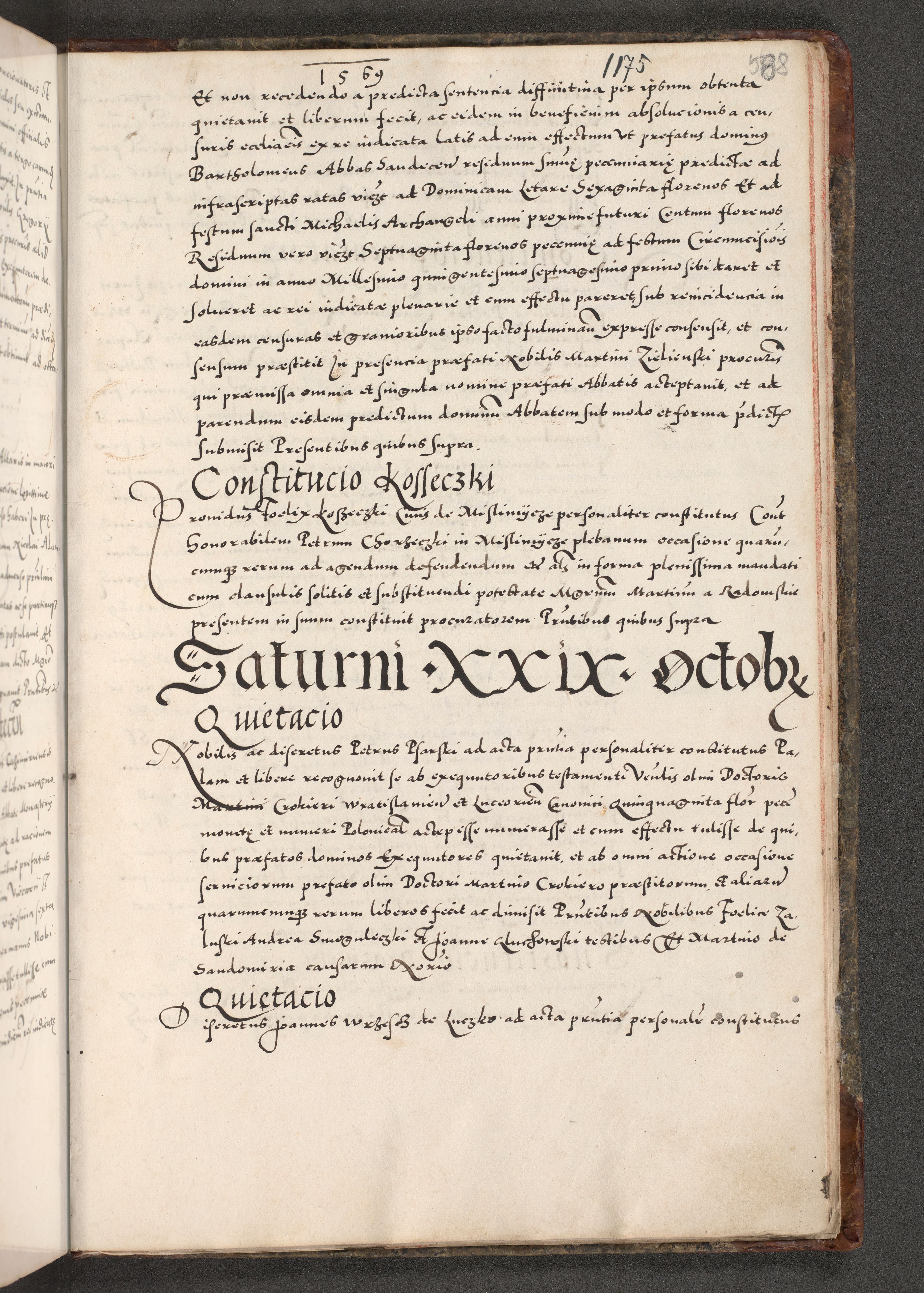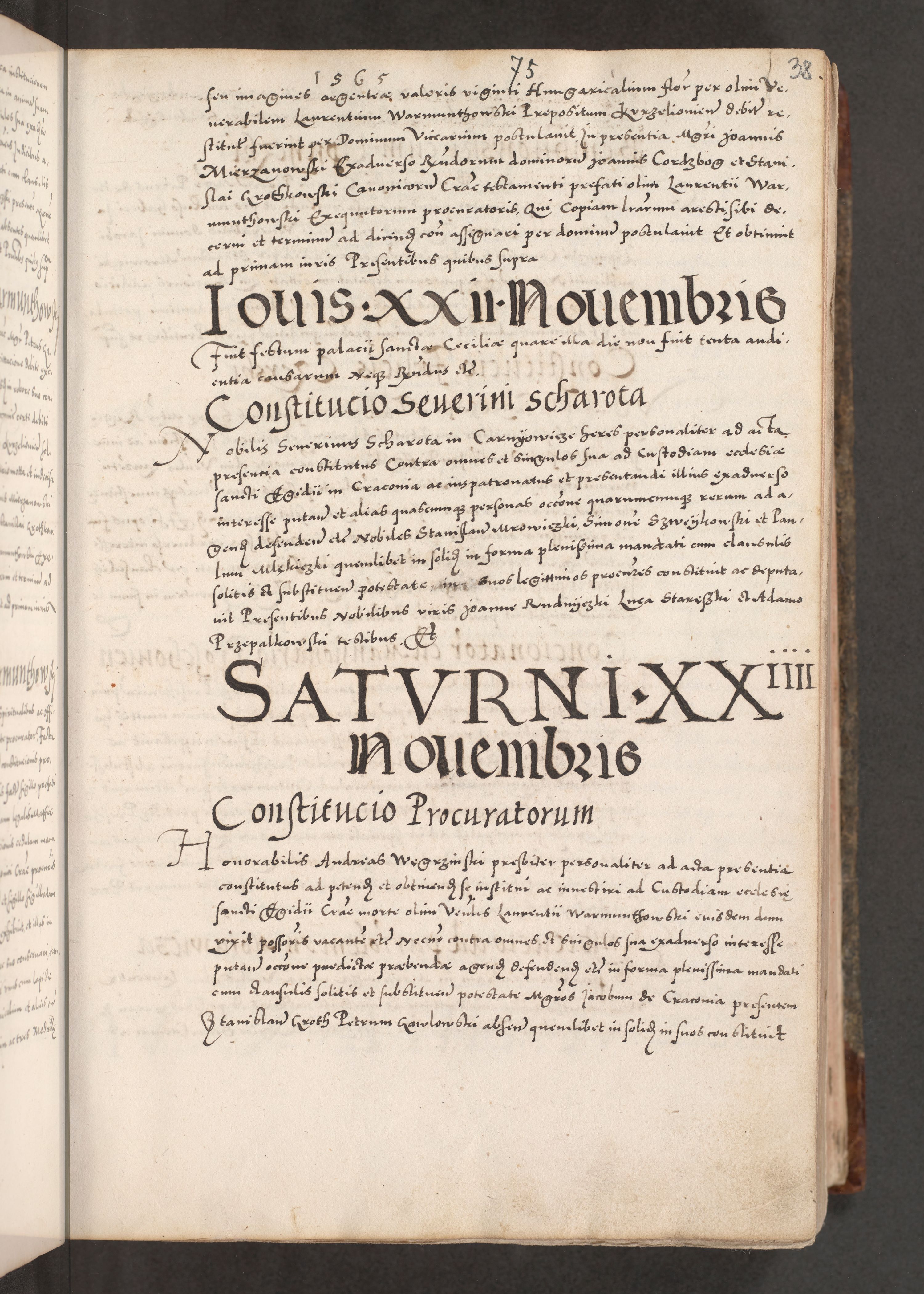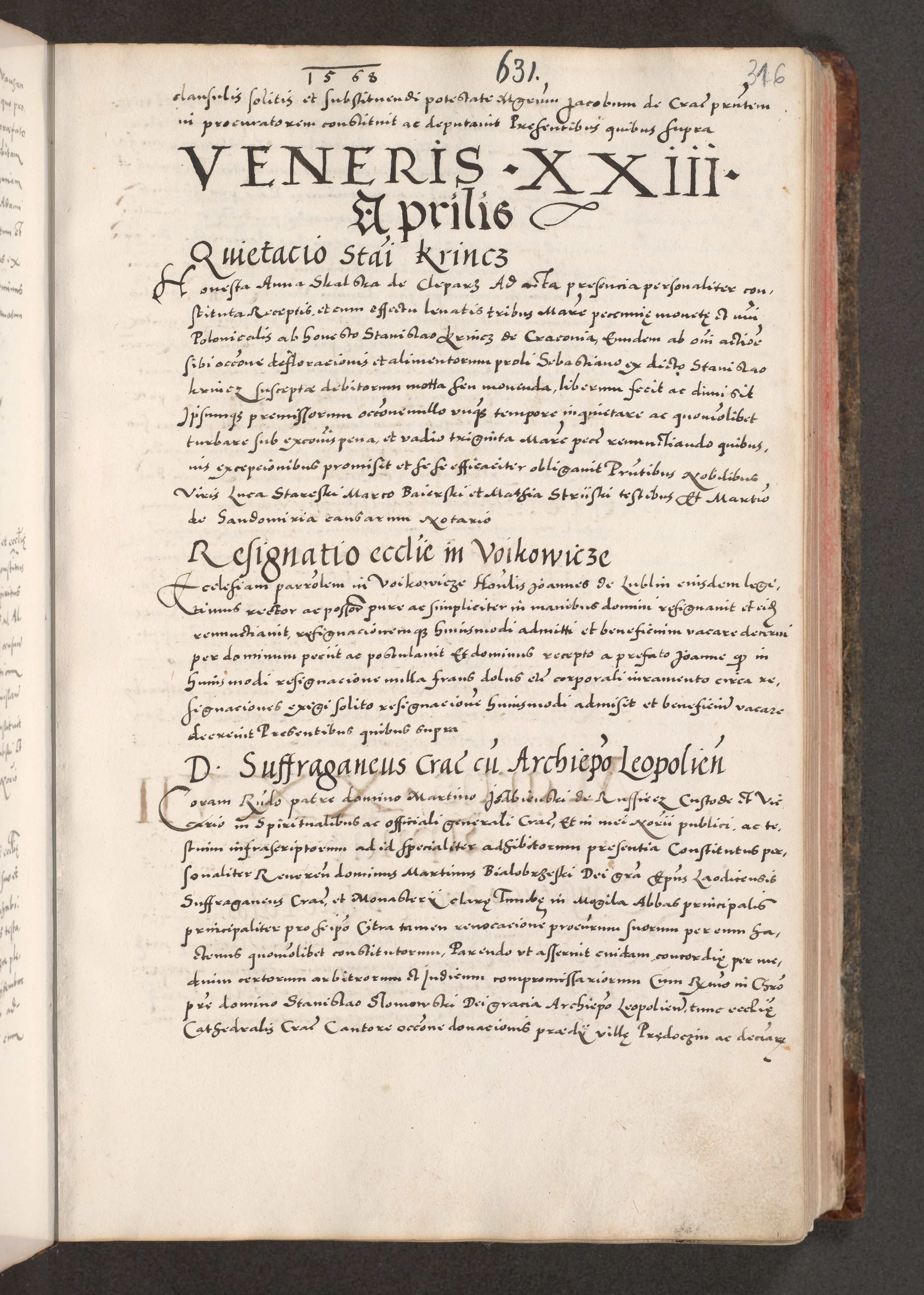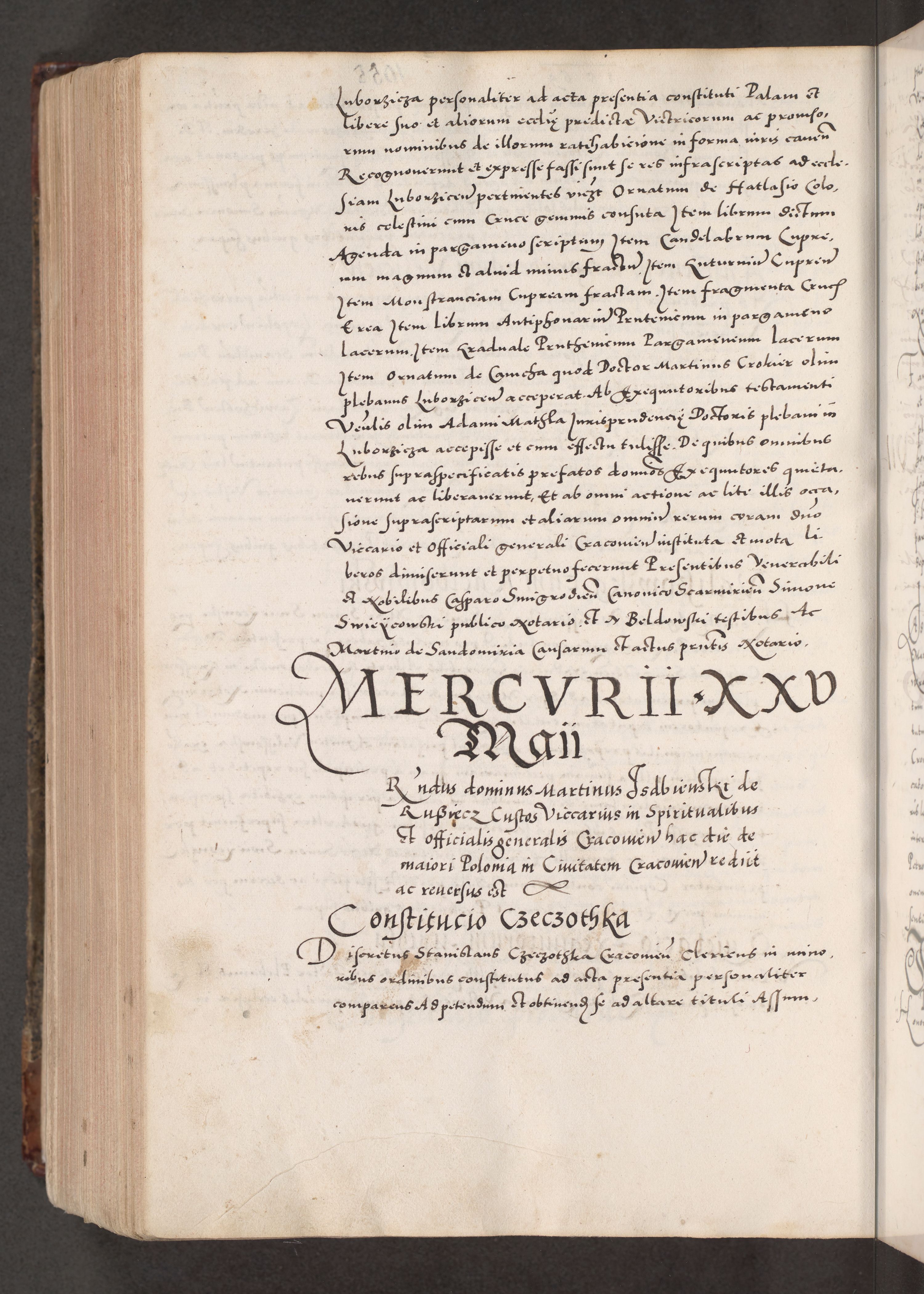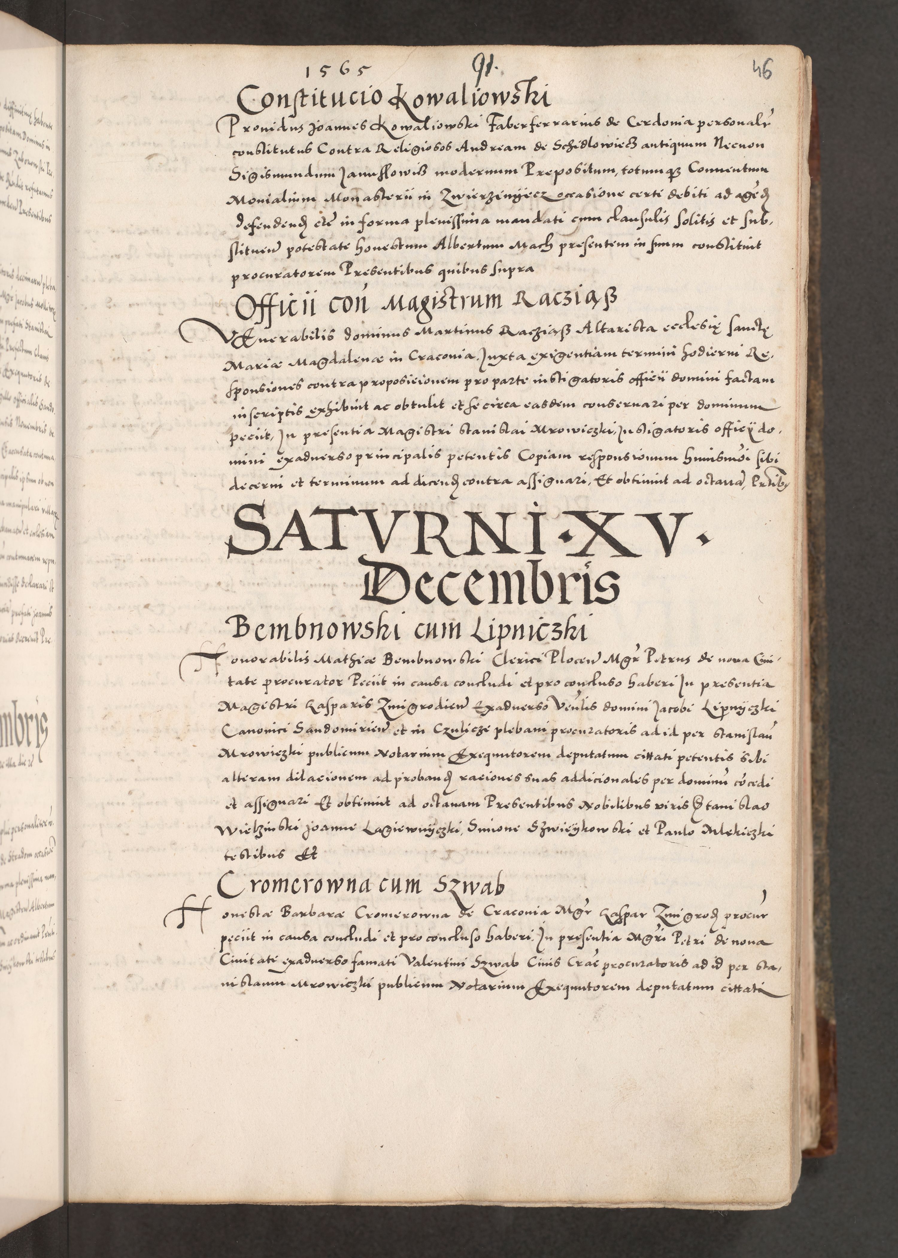 Acta actorum causarum, sententiarum tam diffinitivarum quam interloquutoriarum, decretorum, obligationum, quietationum, constitutionum procuratorum etc. coram reverendo domino Martino Izdbienski de Russiecz archidiacono Posnaniensi, custode et in spiritualibus vicario generali Cracoviensi, ad annum Domini millesimum quingesimum sexagesimum quintum, cuius indictio octava, pontificatus Pii pape, annus sextus, continuantur