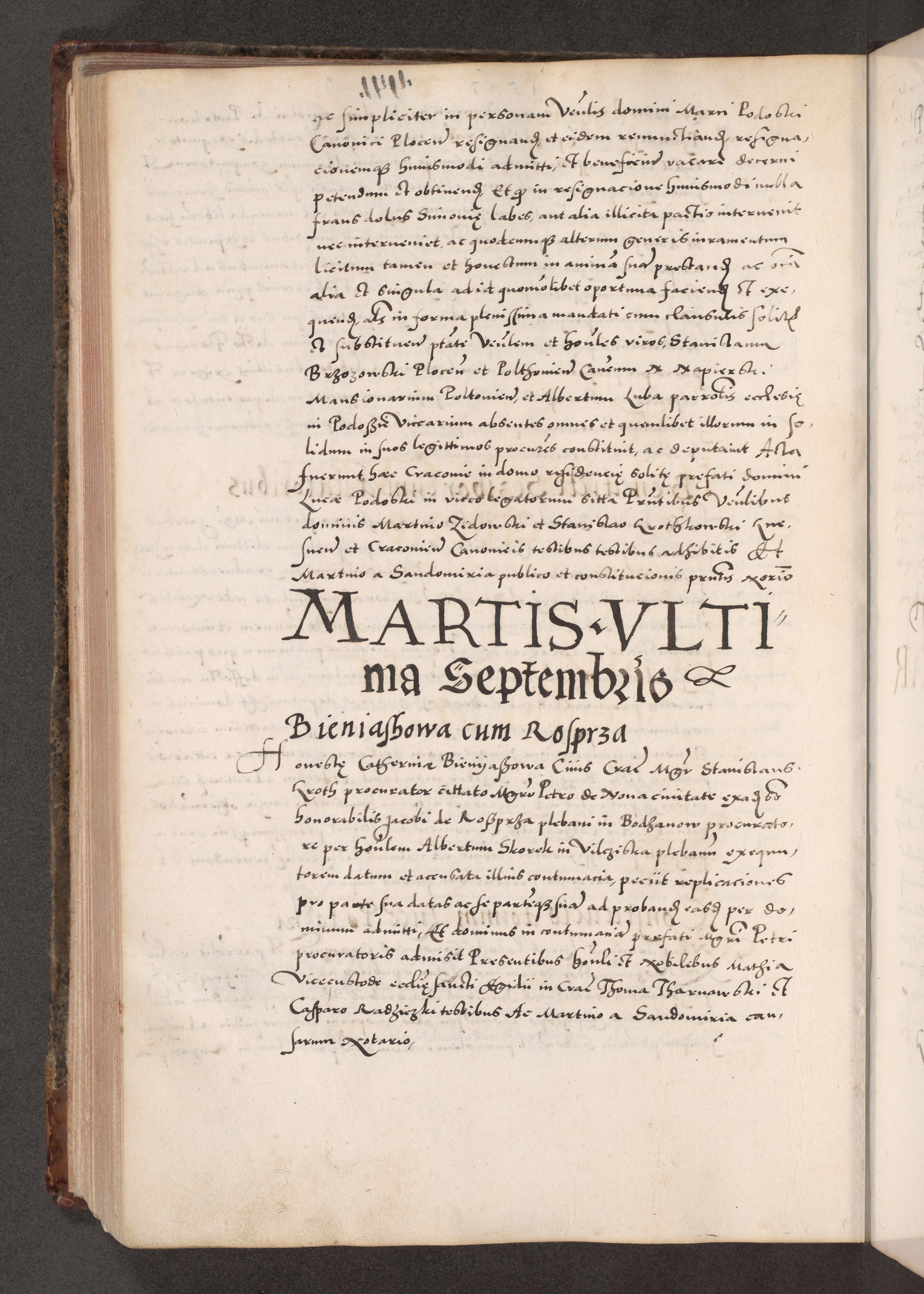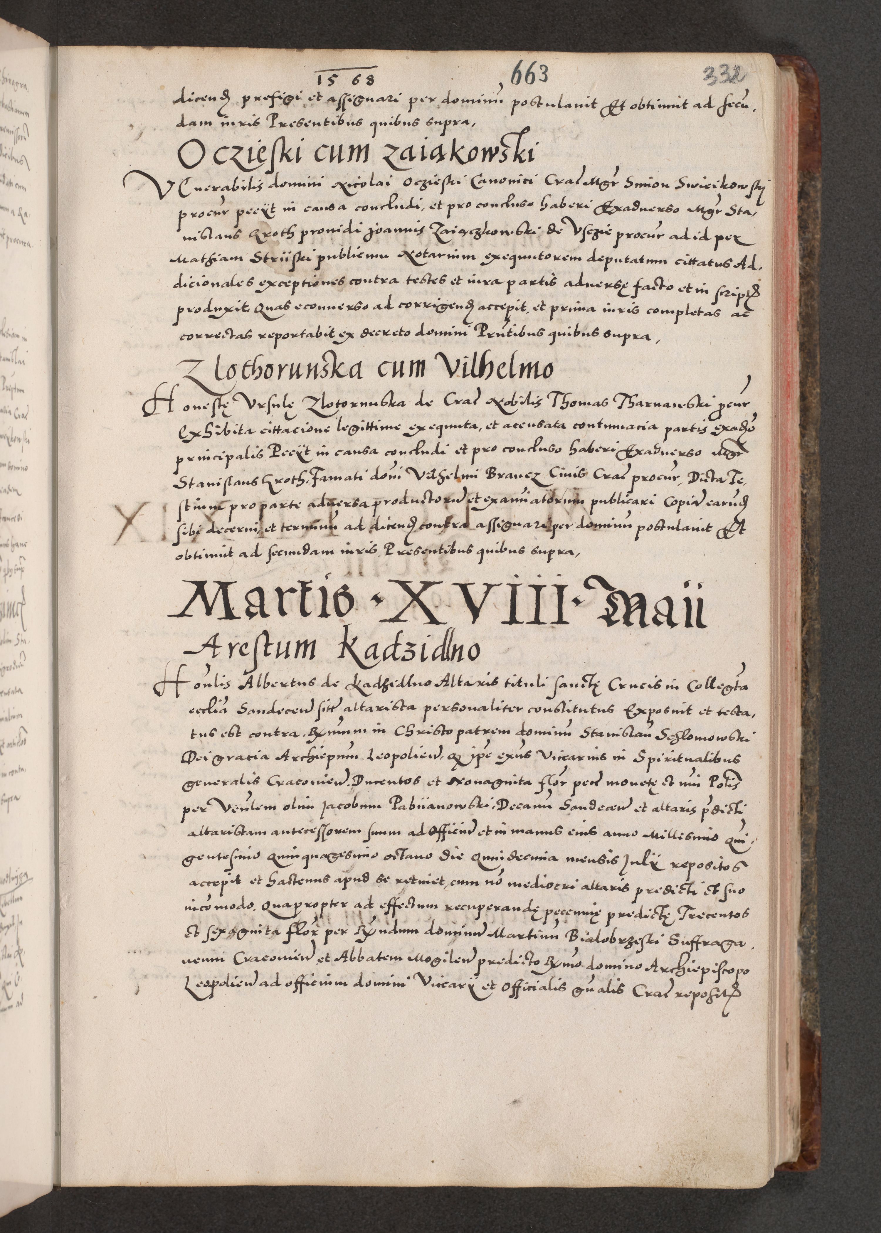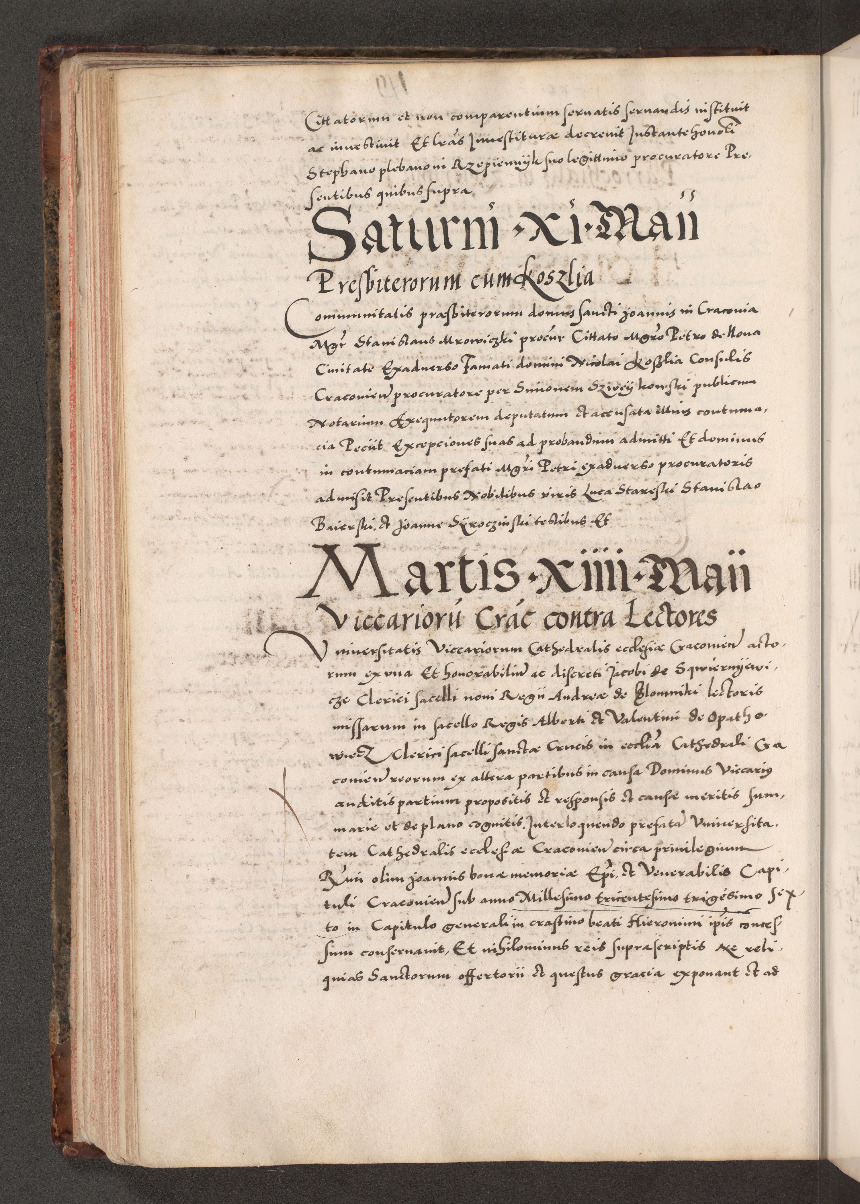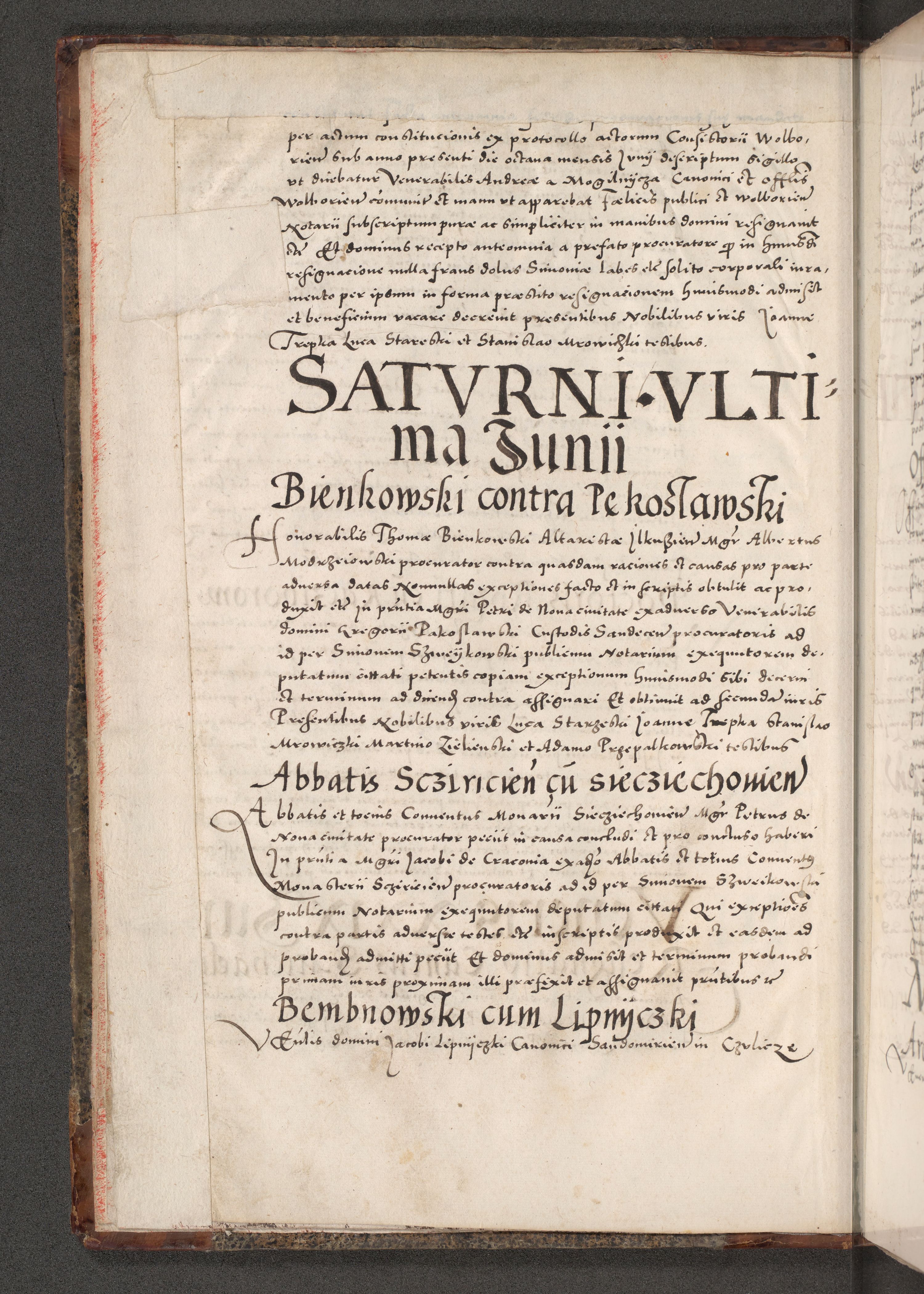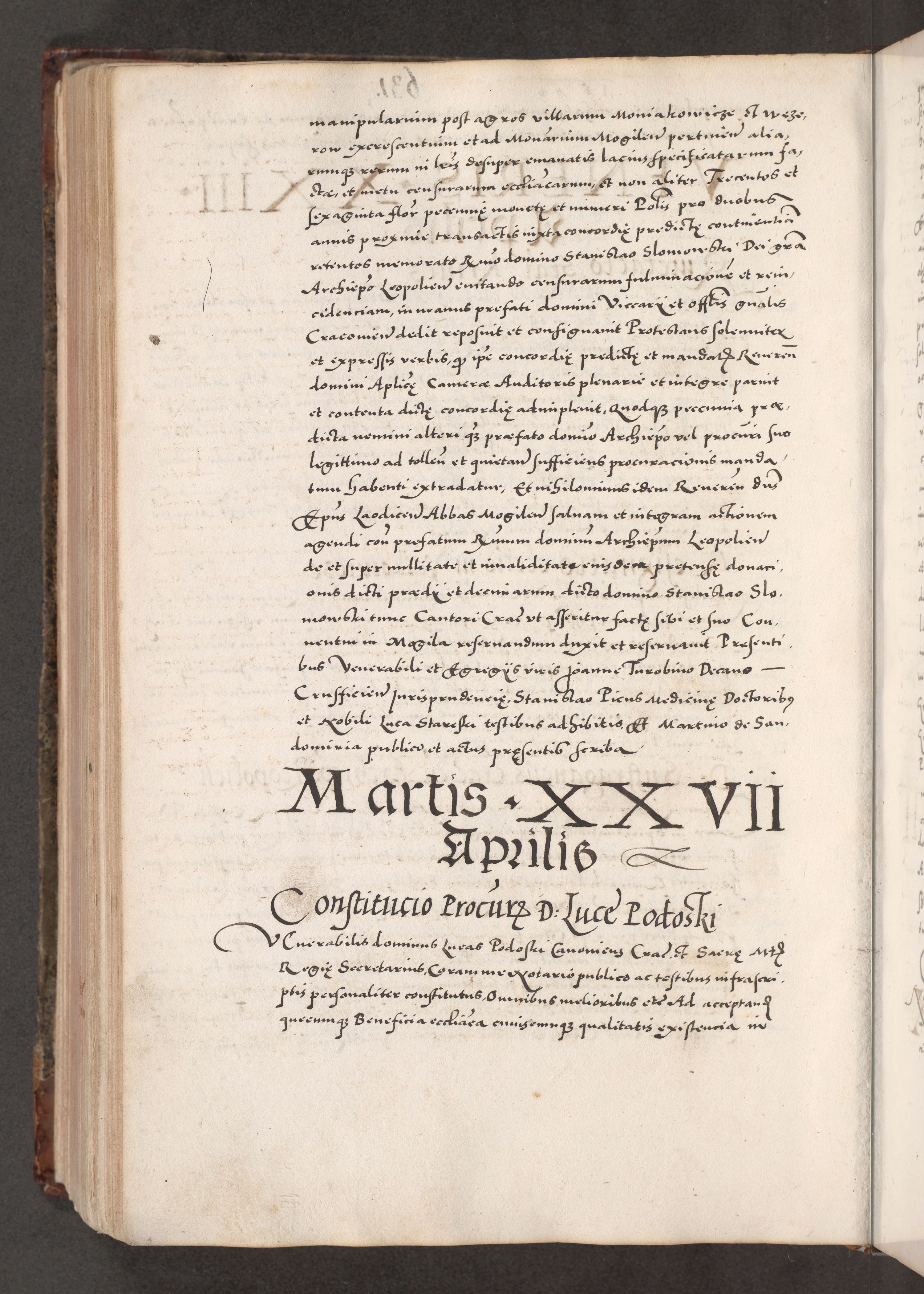 Acta actorum causarum, sententiarum tam diffinitivarum quam interloquutoriarum, decretorum, obligationum, quietationum, constitutionum procuratorum etc. coram reverendo domino Martino Izdbienski de Russiecz archidiacono Posnaniensi, custode et in spiritualibus vicario generali Cracoviensi, ad annum Domini millesimum quingesimum sexagesimum quintum, cuius indictio octava, pontificatus Pii pape, annus sextus, continuantur