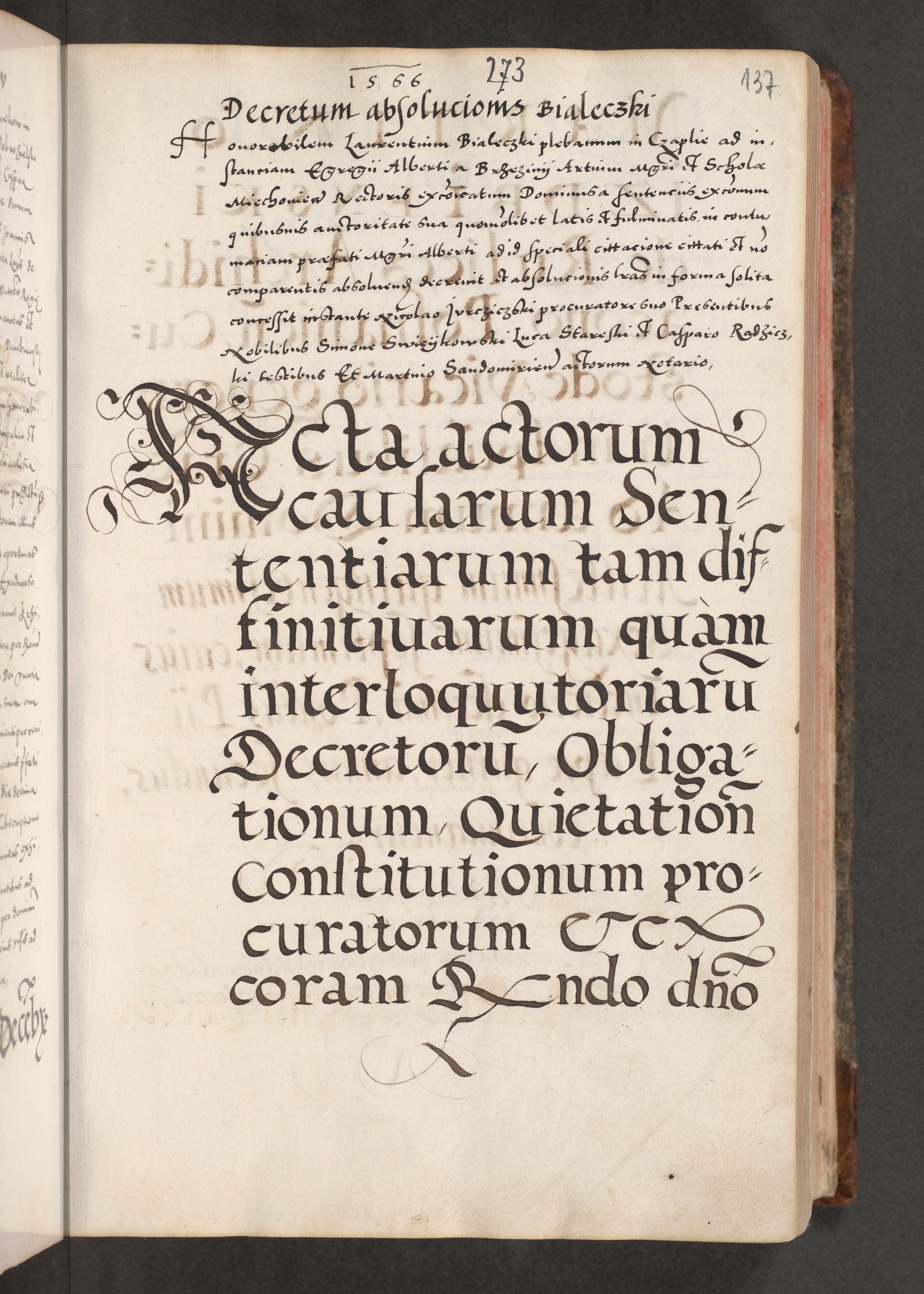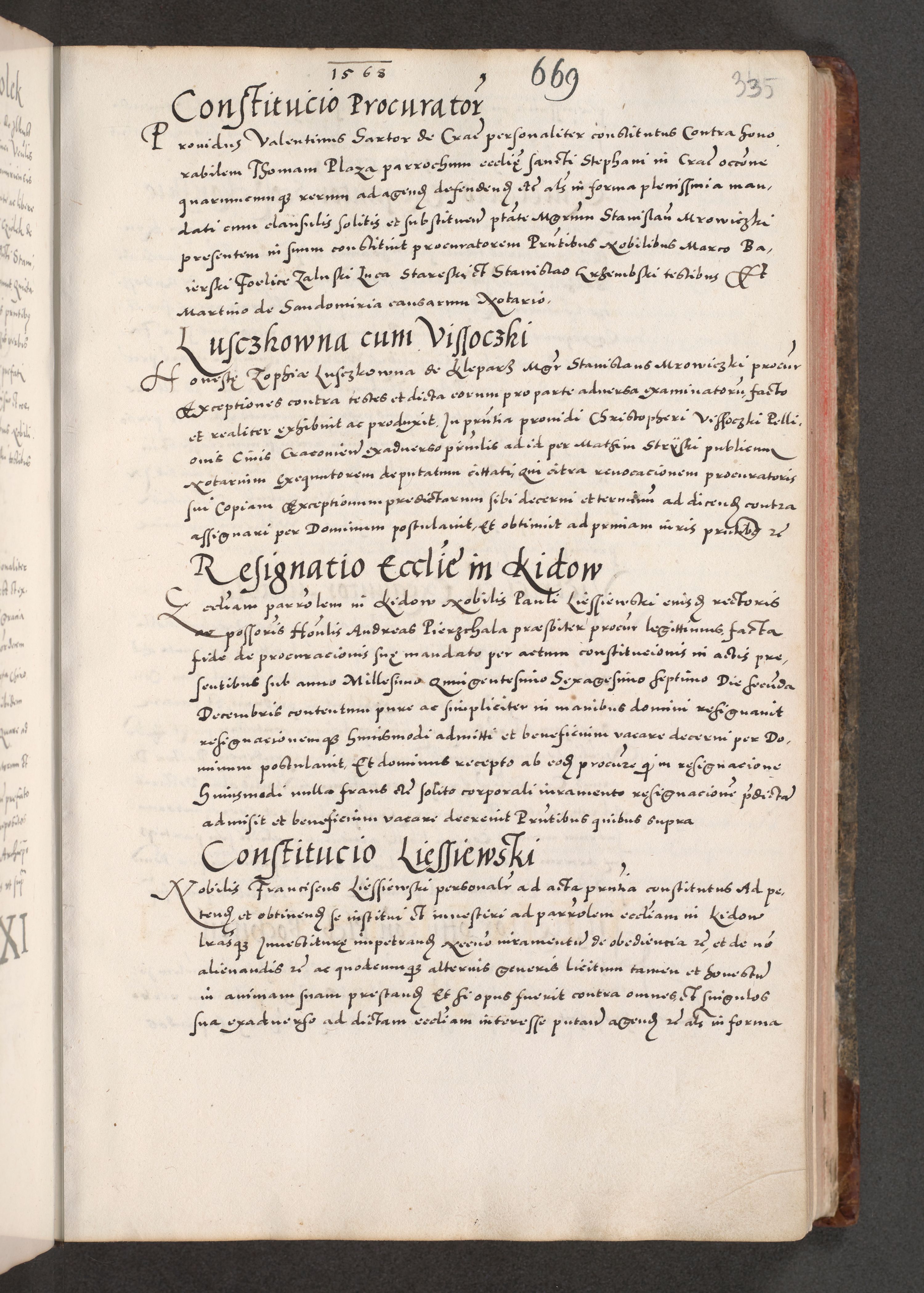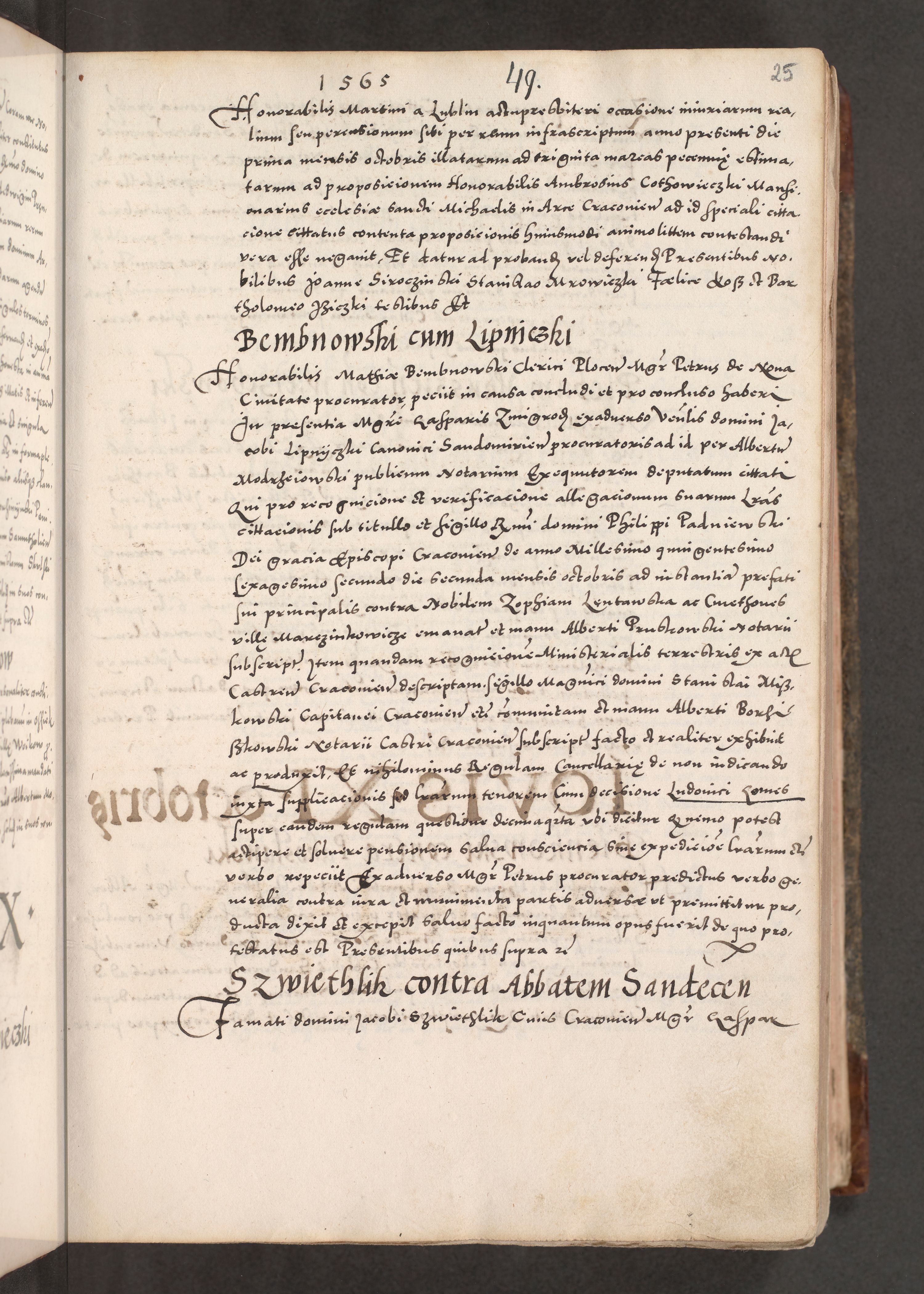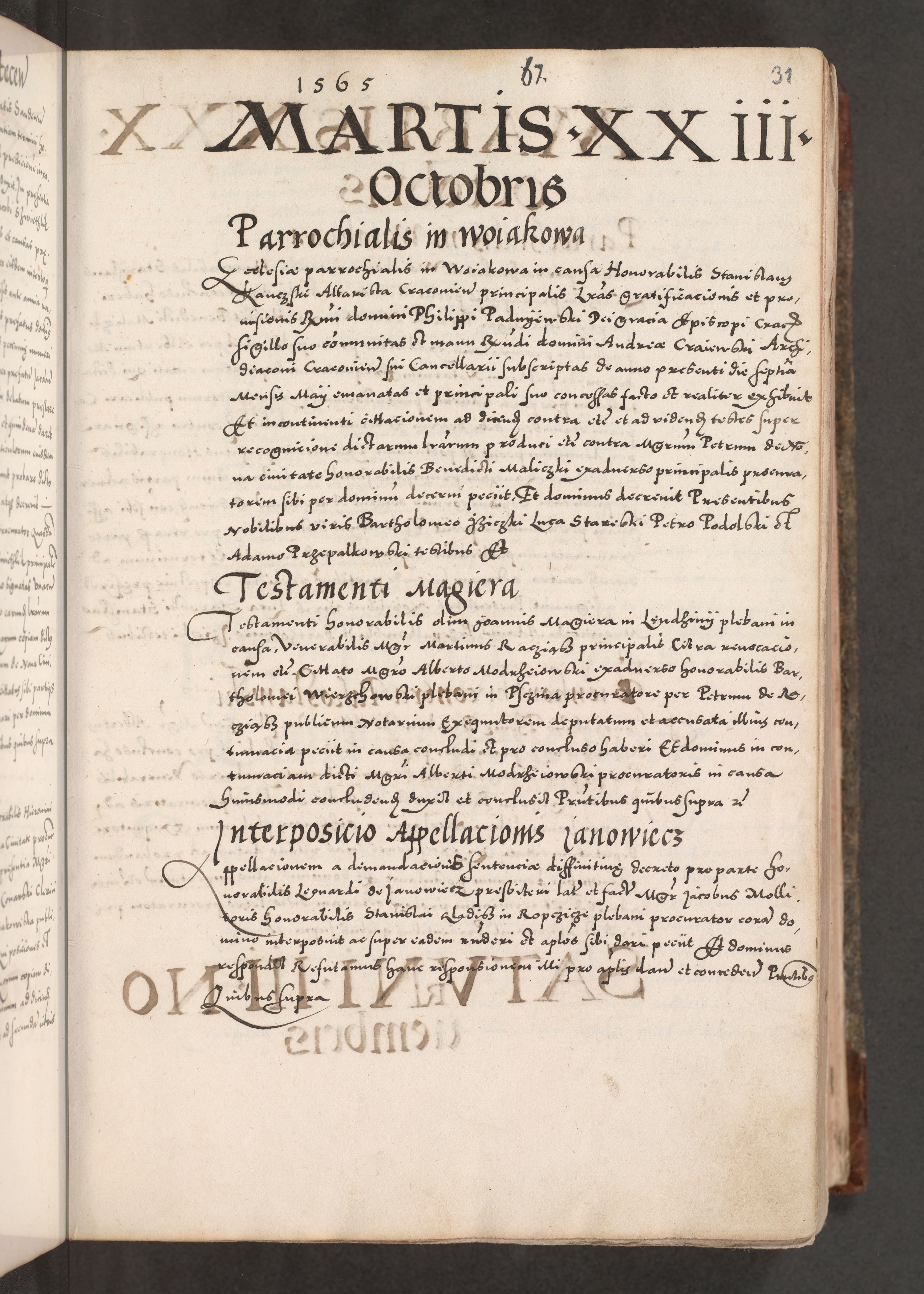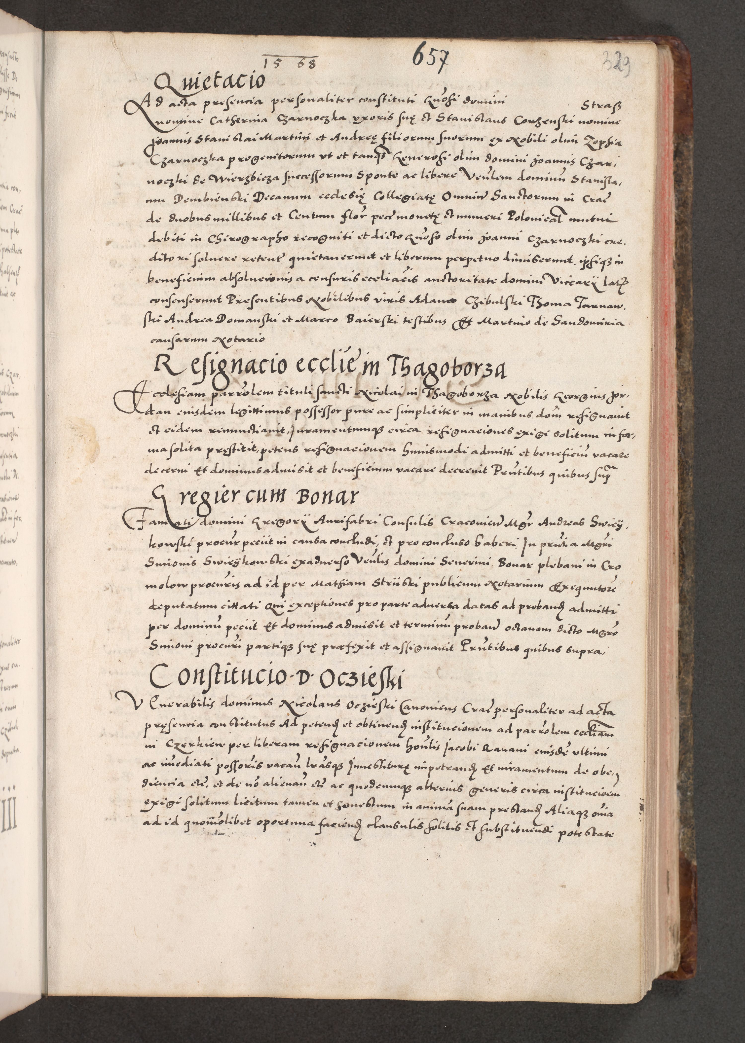 Acta actorum causarum, sententiarum tam diffinitivarum quam interloquutoriarum, decretorum, obligationum, quietationum, constitutionum procuratorum etc. coram reverendo domino Martino Izdbienski de Russiecz archidiacono Posnaniensi, custode et in spiritualibus vicario generali Cracoviensi, ad annum Domini millesimum quingesimum sexagesimum quintum, cuius indictio octava, pontificatus Pii pape, annus sextus, continuantur