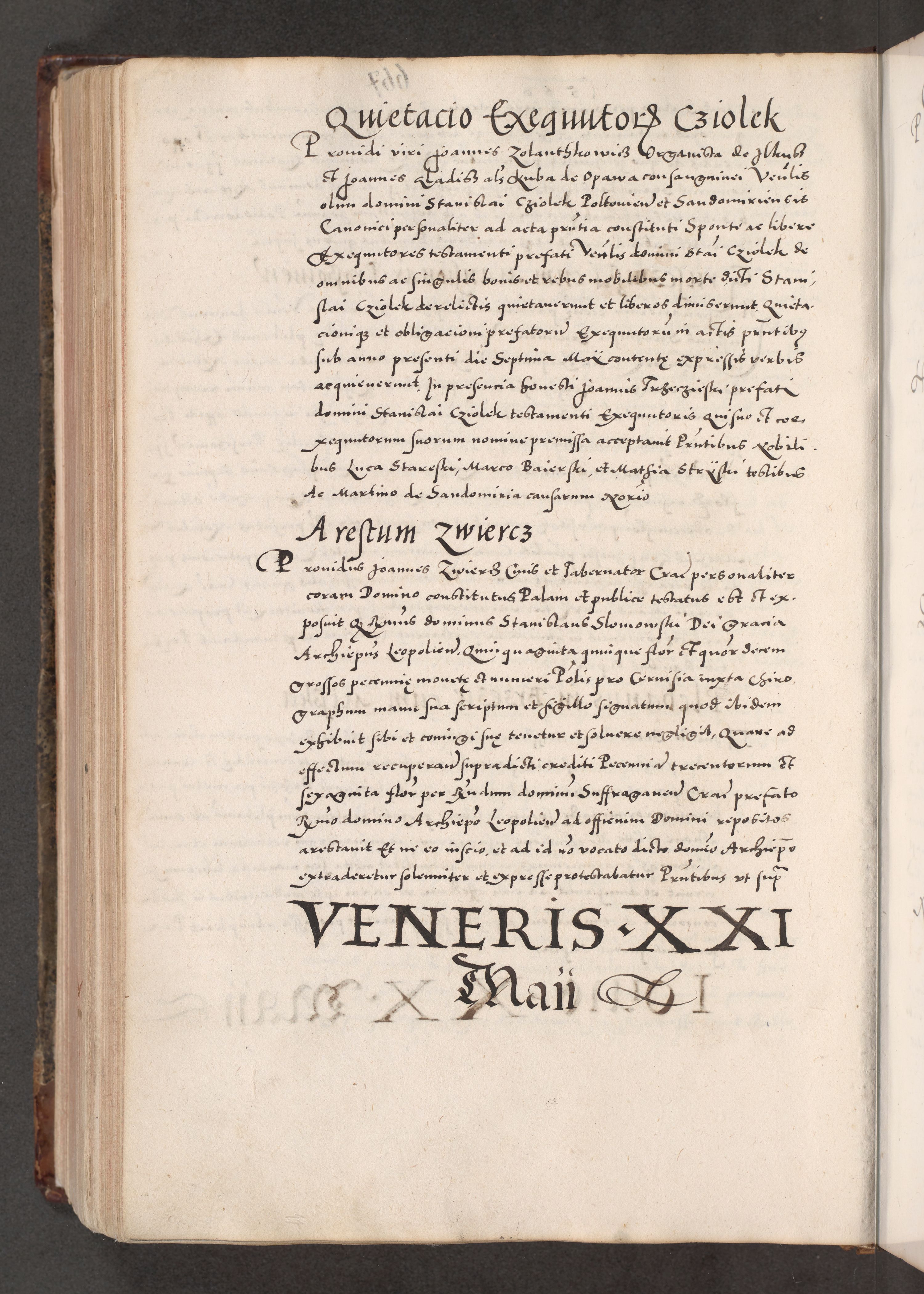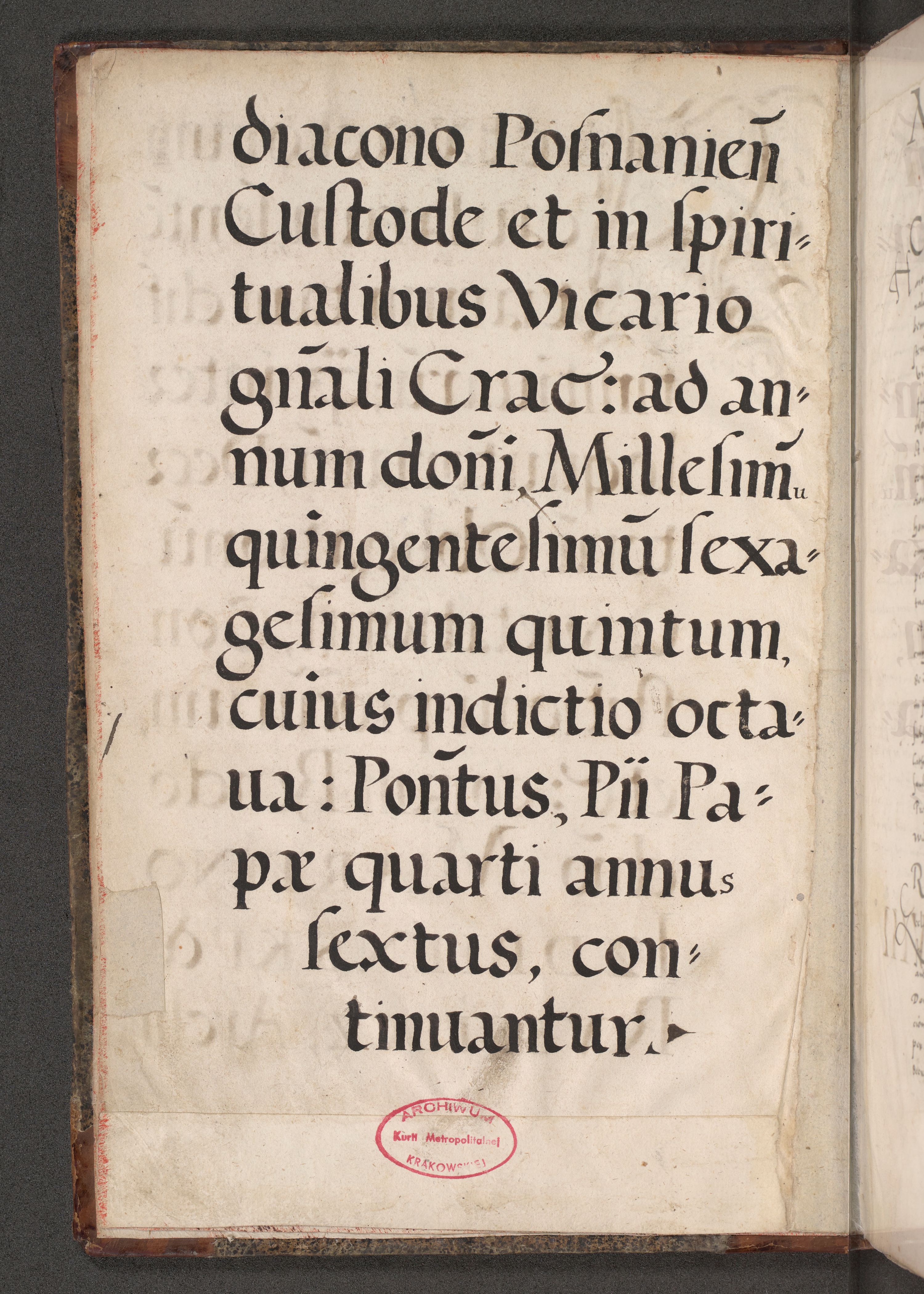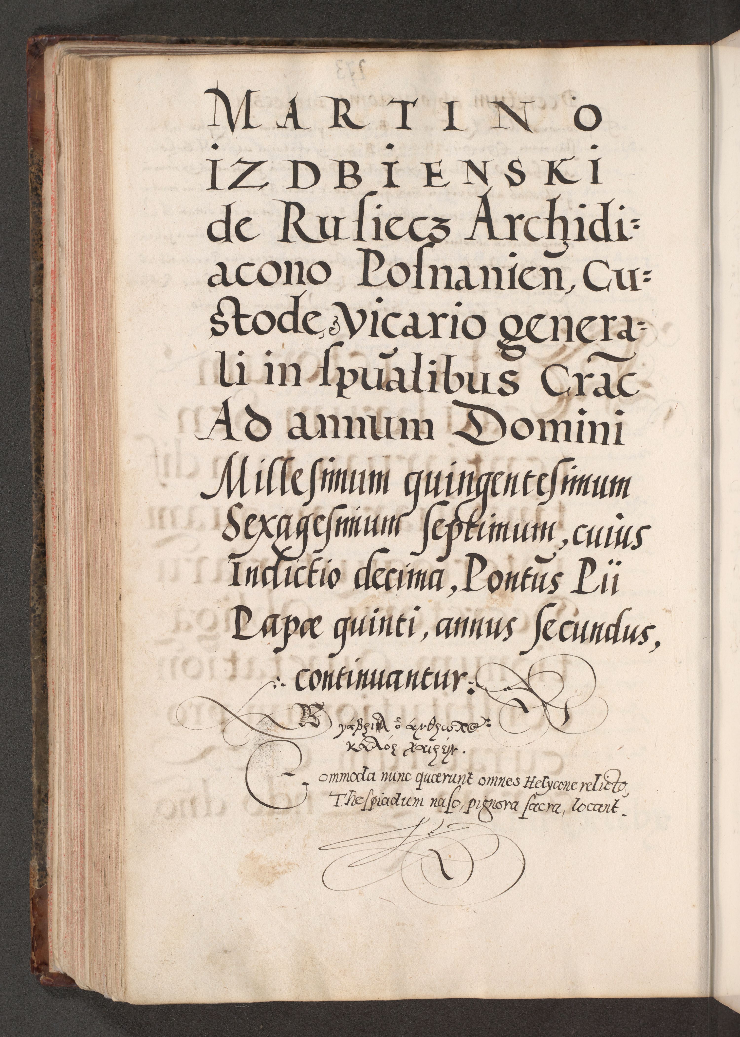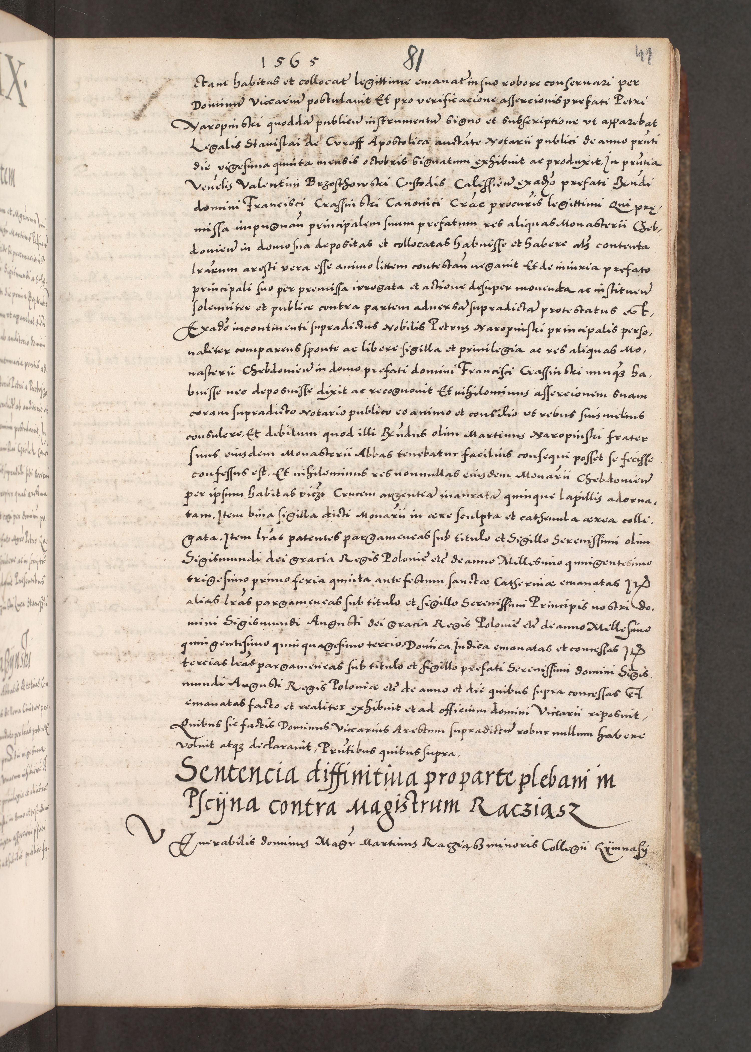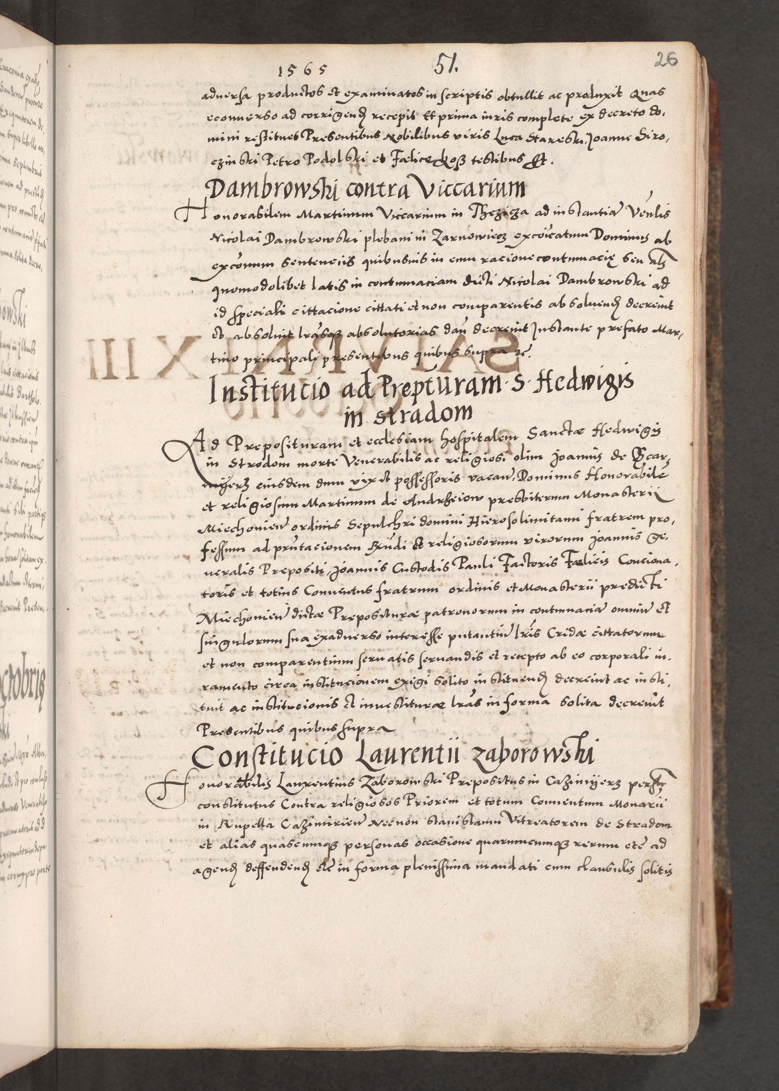 Acta actorum causarum, sententiarum tam diffinitivarum quam interloquutoriarum, decretorum, obligationum, quietationum, constitutionum procuratorum etc. coram reverendo domino Martino Izdbienski de Russiecz archidiacono Posnaniensi, custode et in spiritualibus vicario generali Cracoviensi, ad annum Domini millesimum quingesimum sexagesimum quintum, cuius indictio octava, pontificatus Pii pape, annus sextus, continuantur