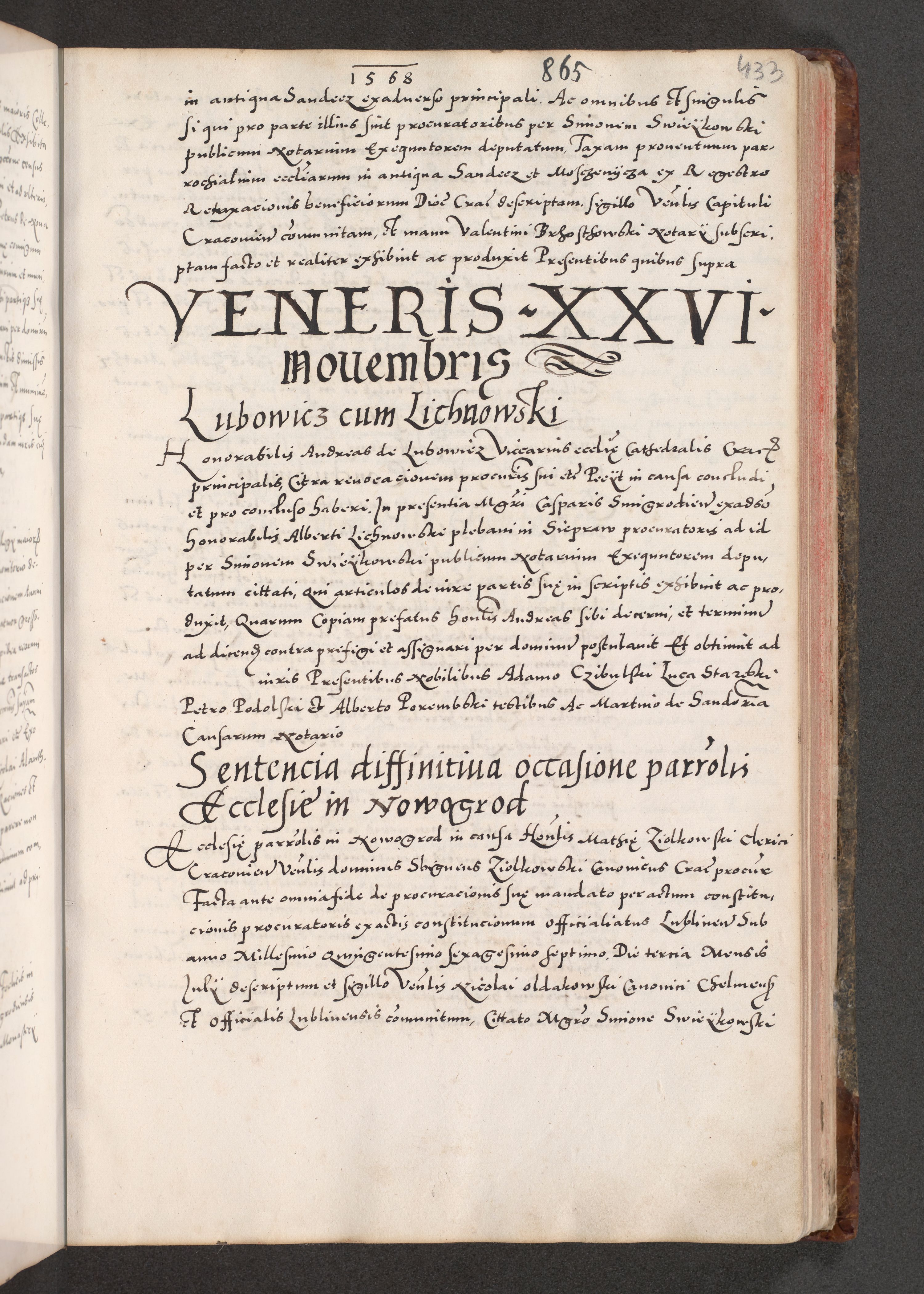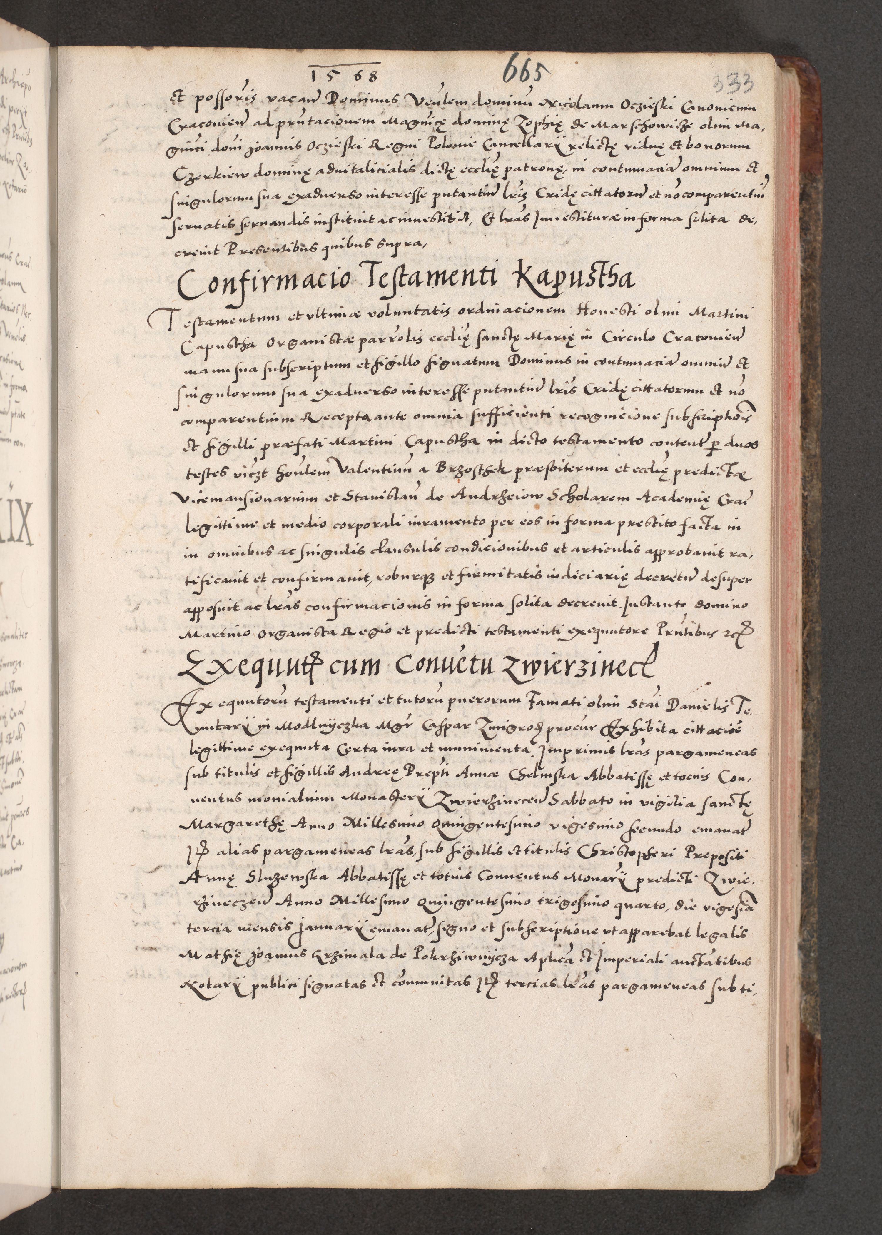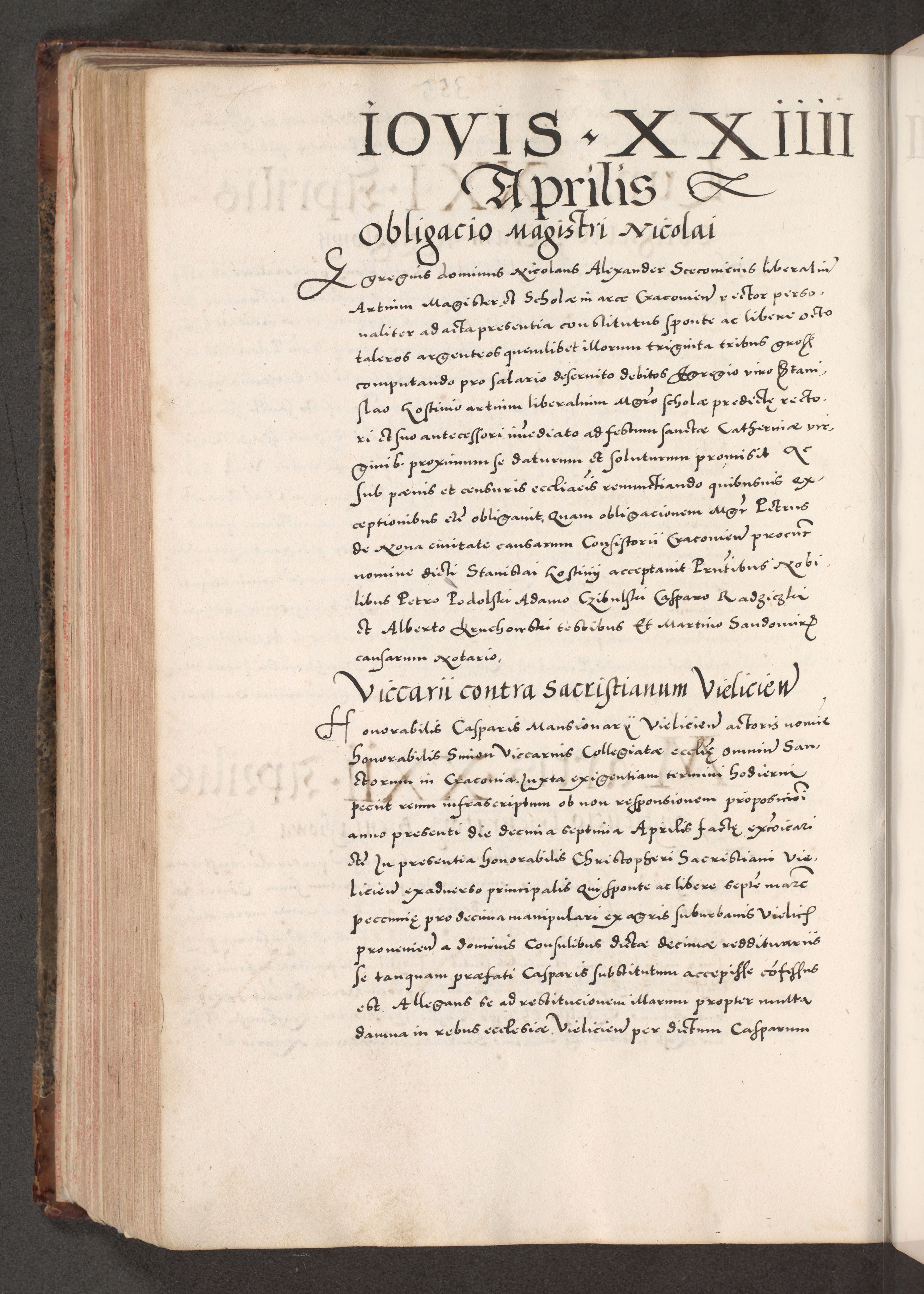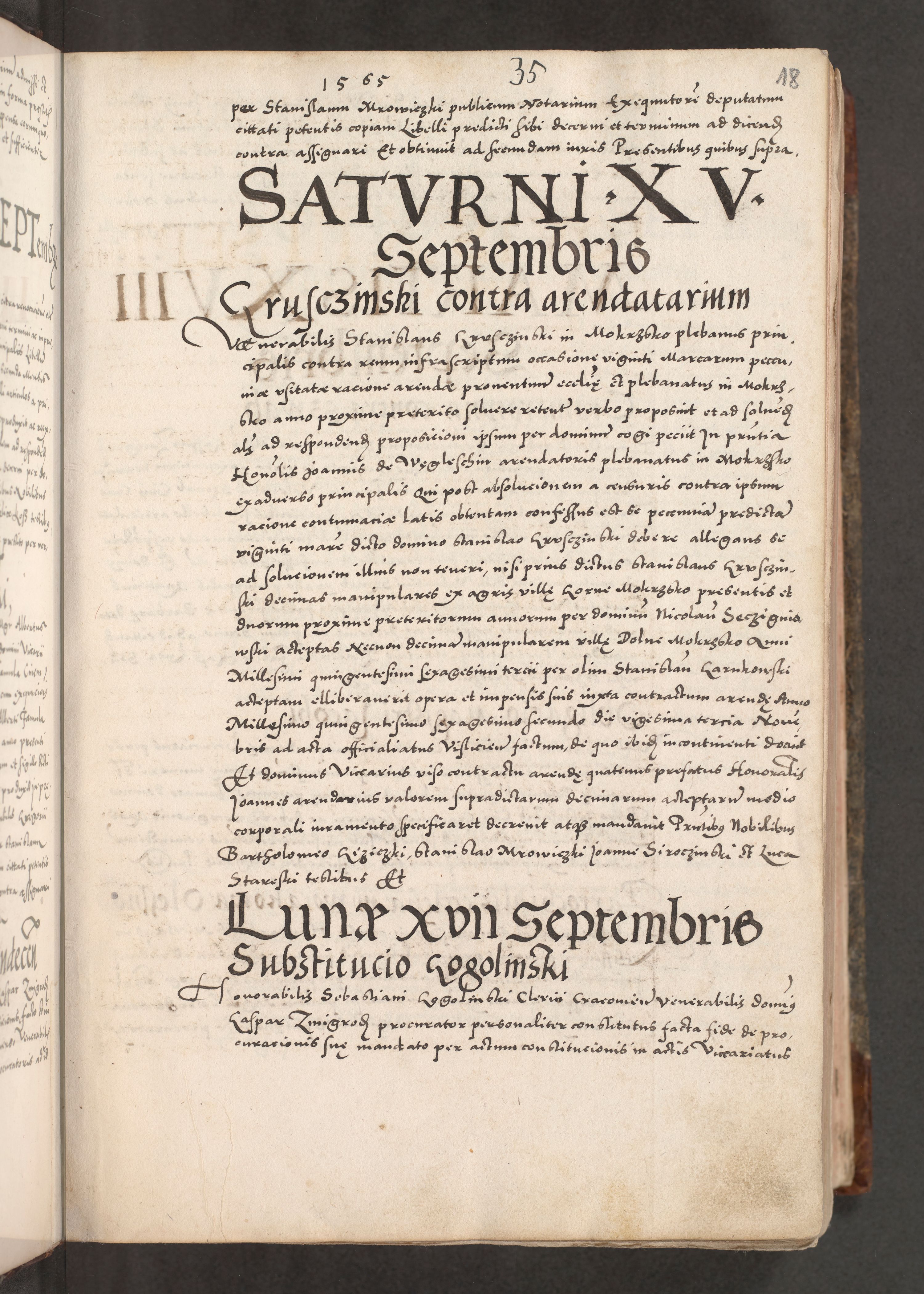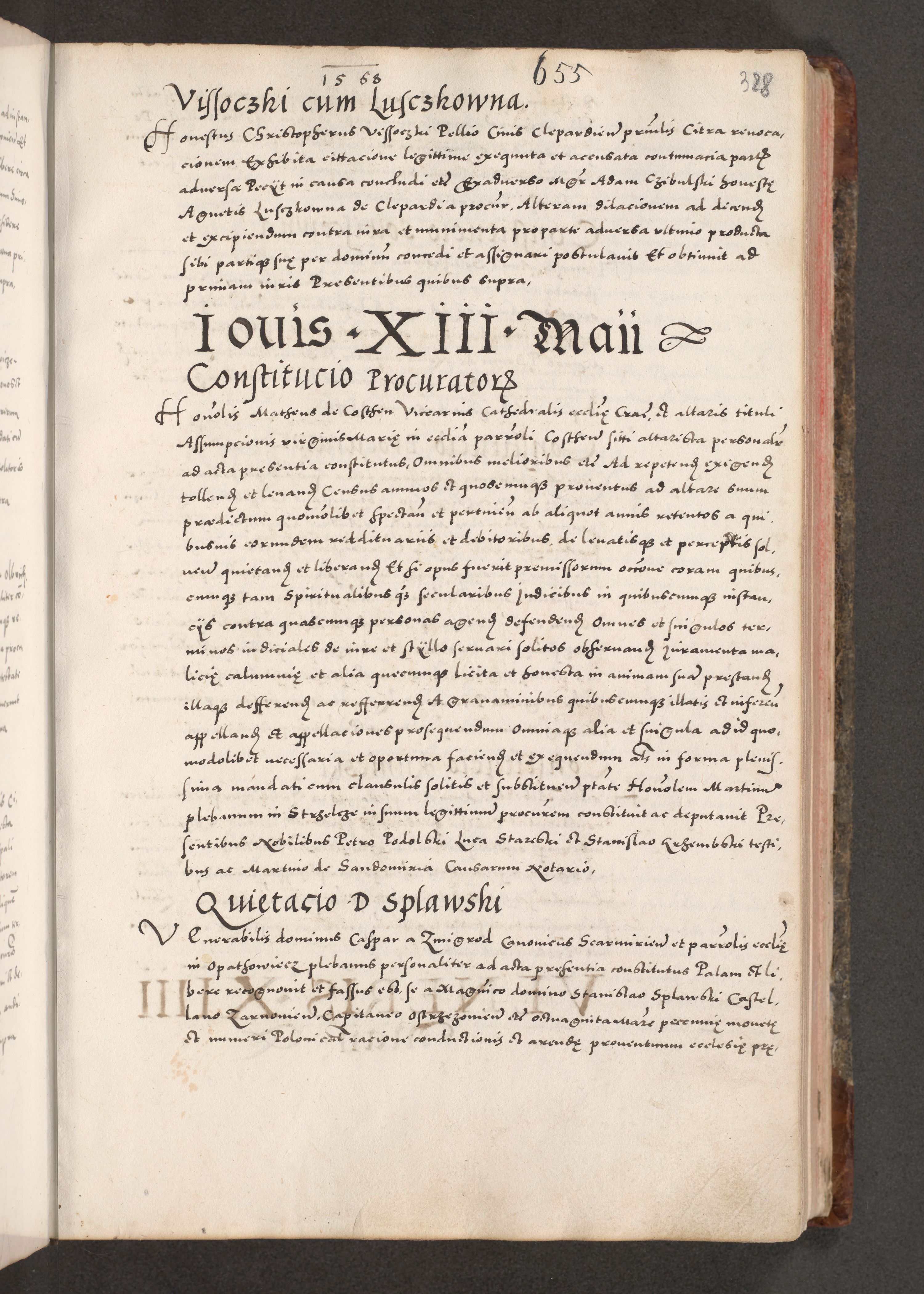 Acta actorum causarum, sententiarum tam diffinitivarum quam interloquutoriarum, decretorum, obligationum, quietationum, constitutionum procuratorum etc. coram reverendo domino Martino Izdbienski de Russiecz archidiacono Posnaniensi, custode et in spiritualibus vicario generali Cracoviensi, ad annum Domini millesimum quingesimum sexagesimum quintum, cuius indictio octava, pontificatus Pii pape, annus sextus, continuantur