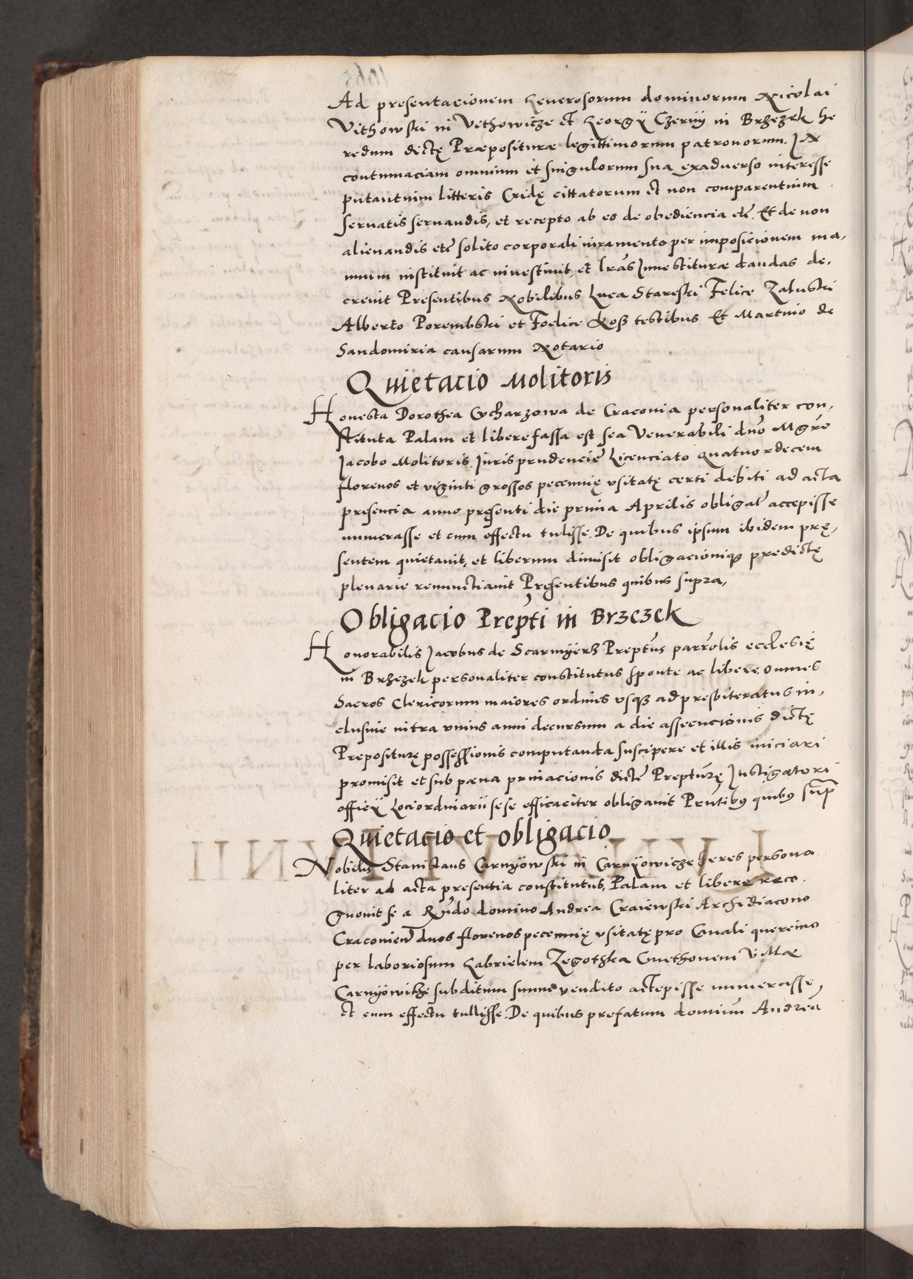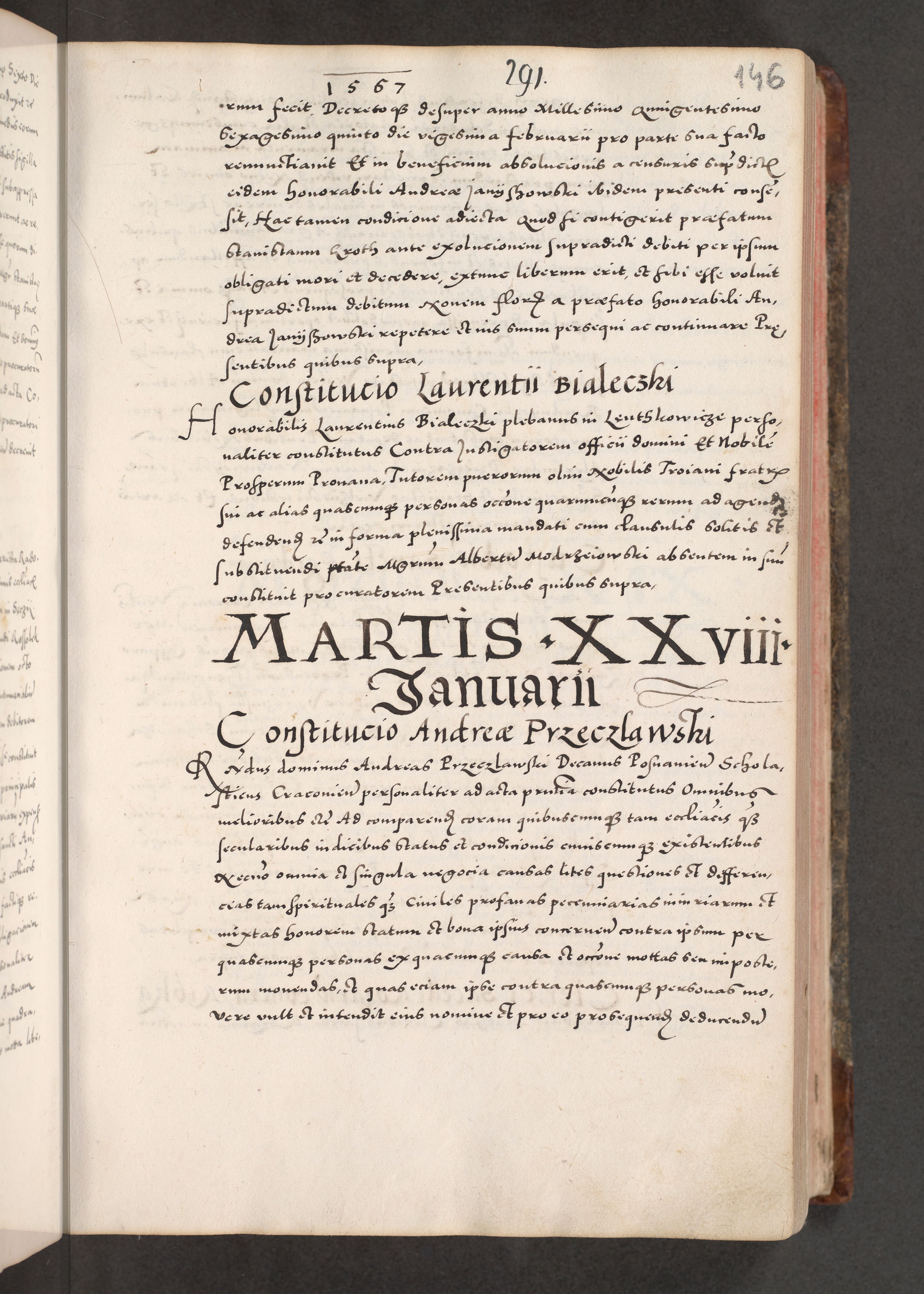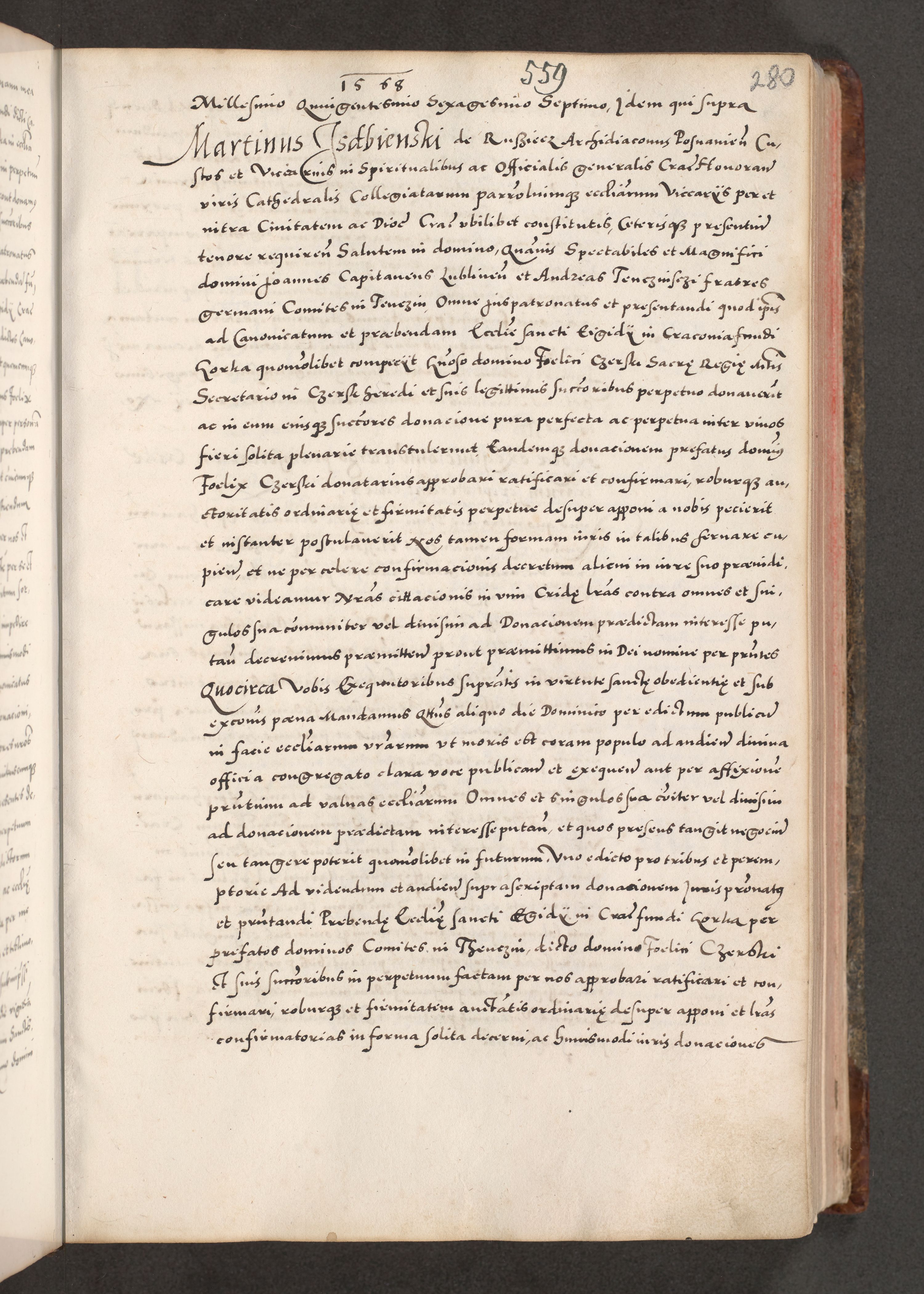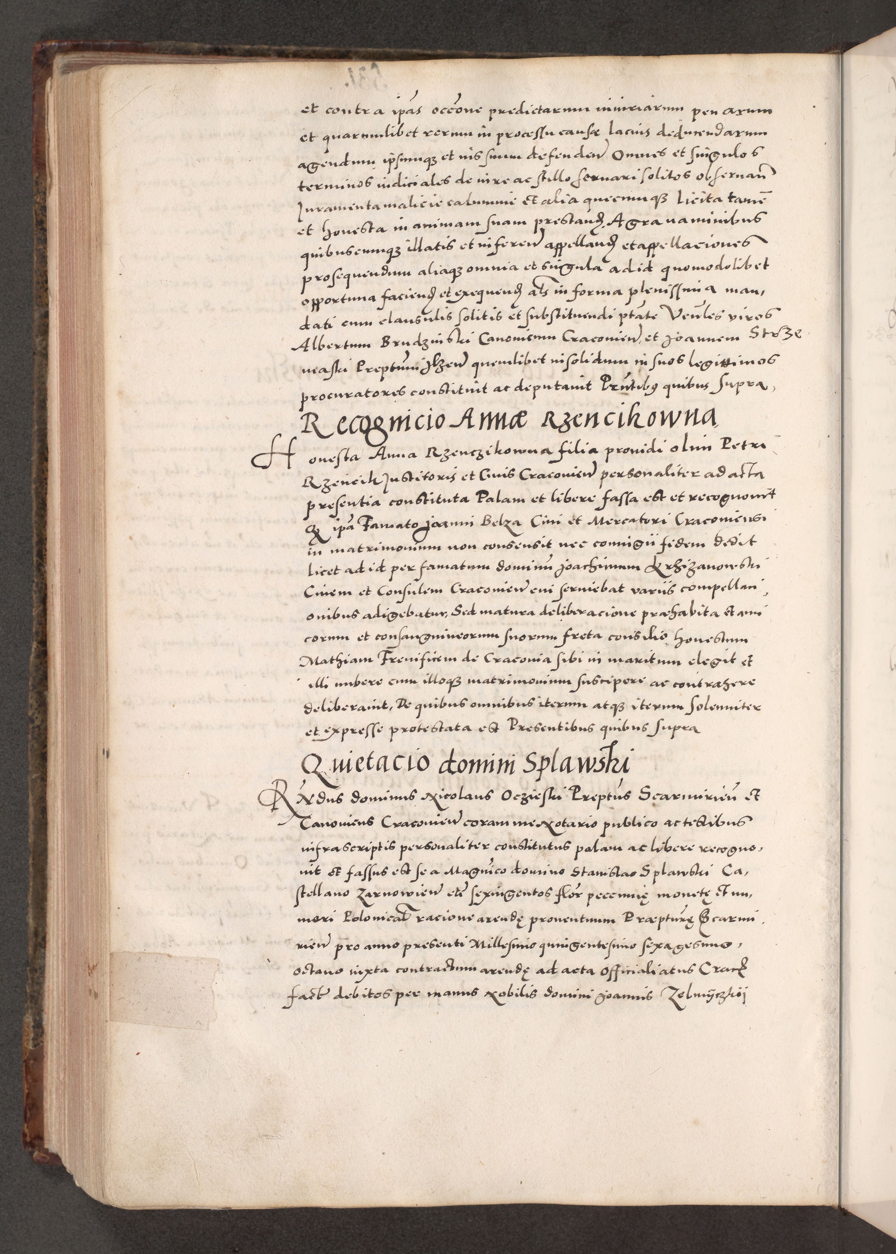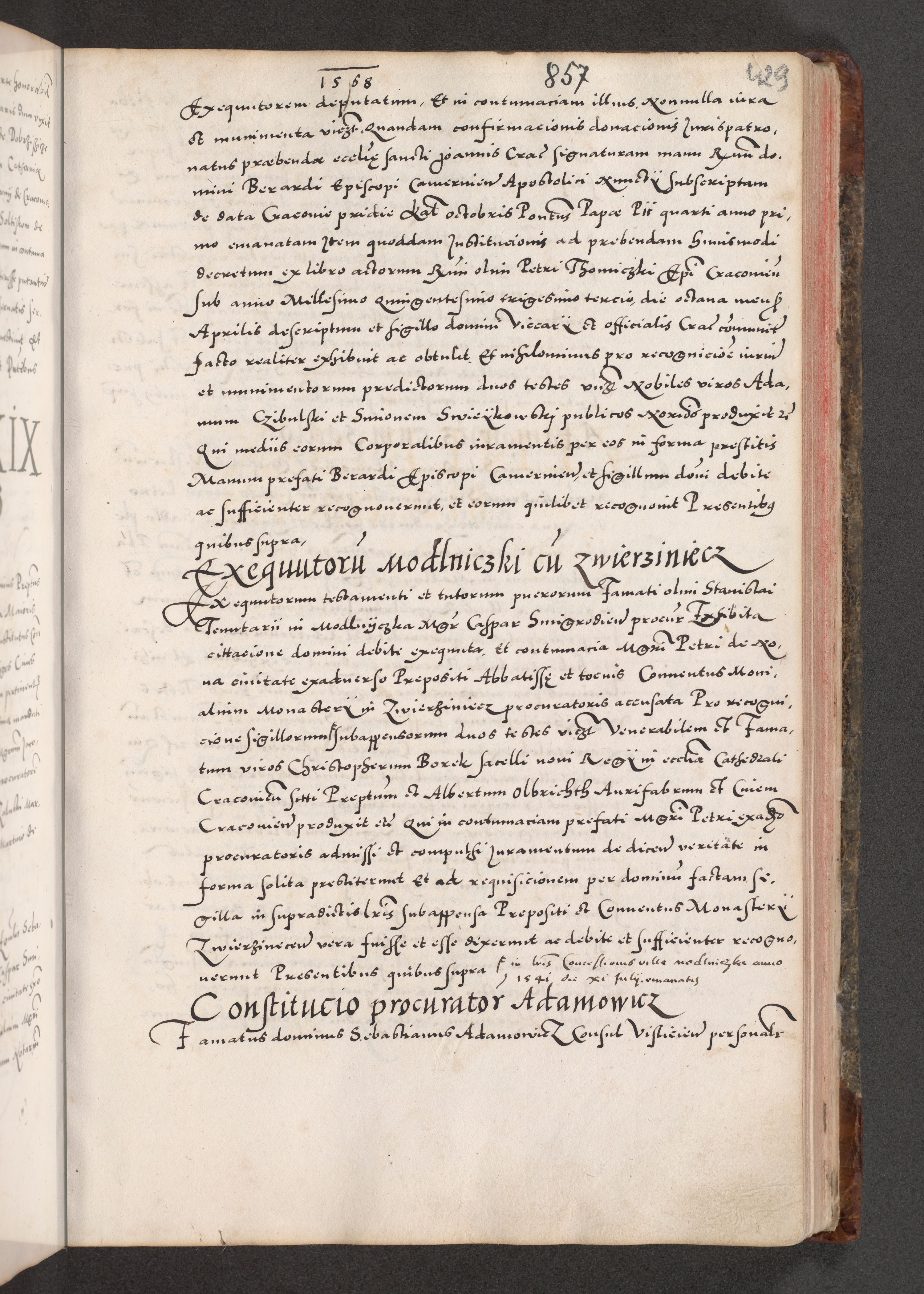 Acta actorum causarum, sententiarum tam diffinitivarum quam interloquutoriarum, decretorum, obligationum, quietationum, constitutionum procuratorum etc. coram reverendo domino Martino Izdbienski de Russiecz archidiacono Posnaniensi, custode et in spiritualibus vicario generali Cracoviensi, ad annum Domini millesimum quingesimum sexagesimum quintum, cuius indictio octava, pontificatus Pii pape, annus sextus, continuantur