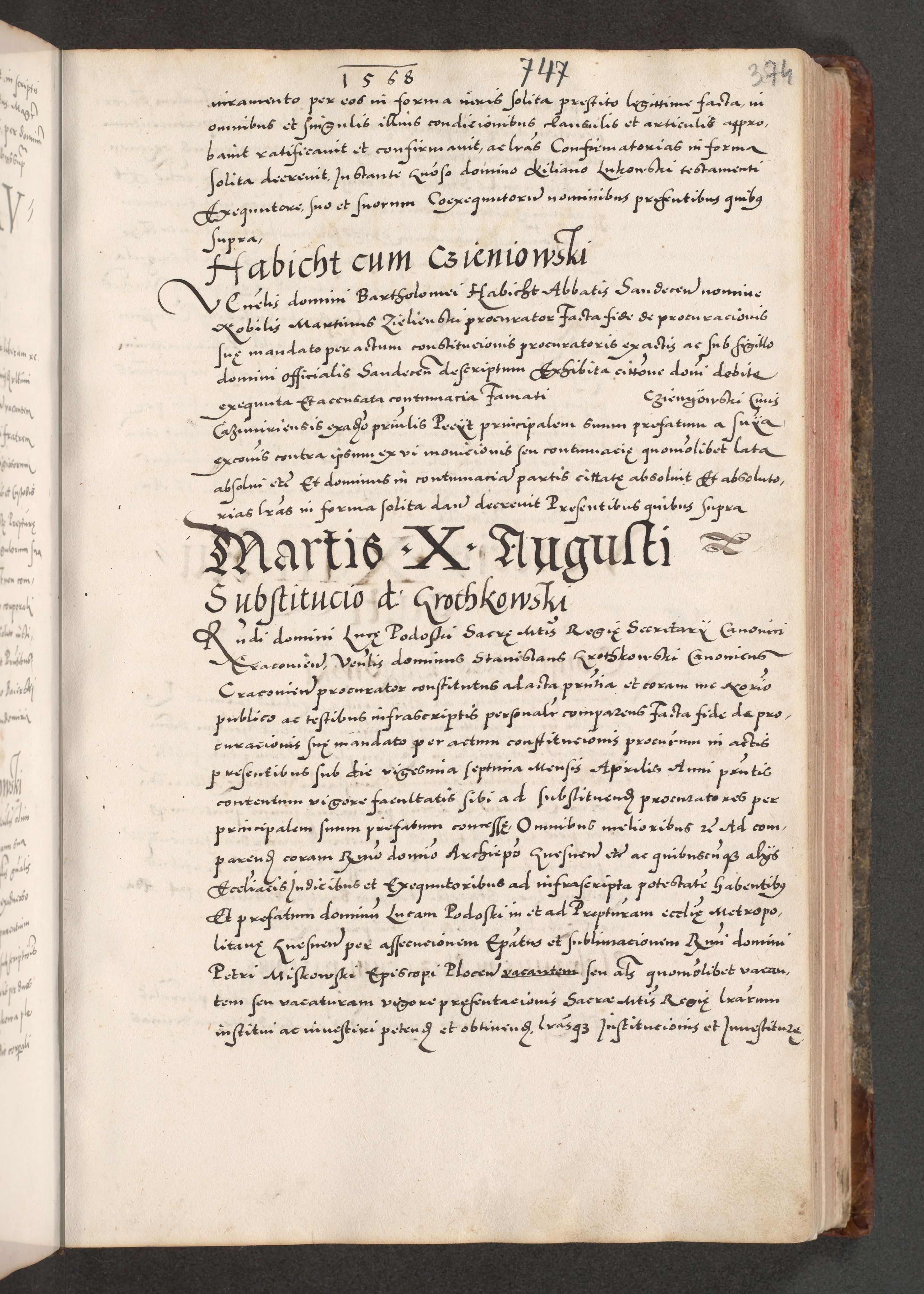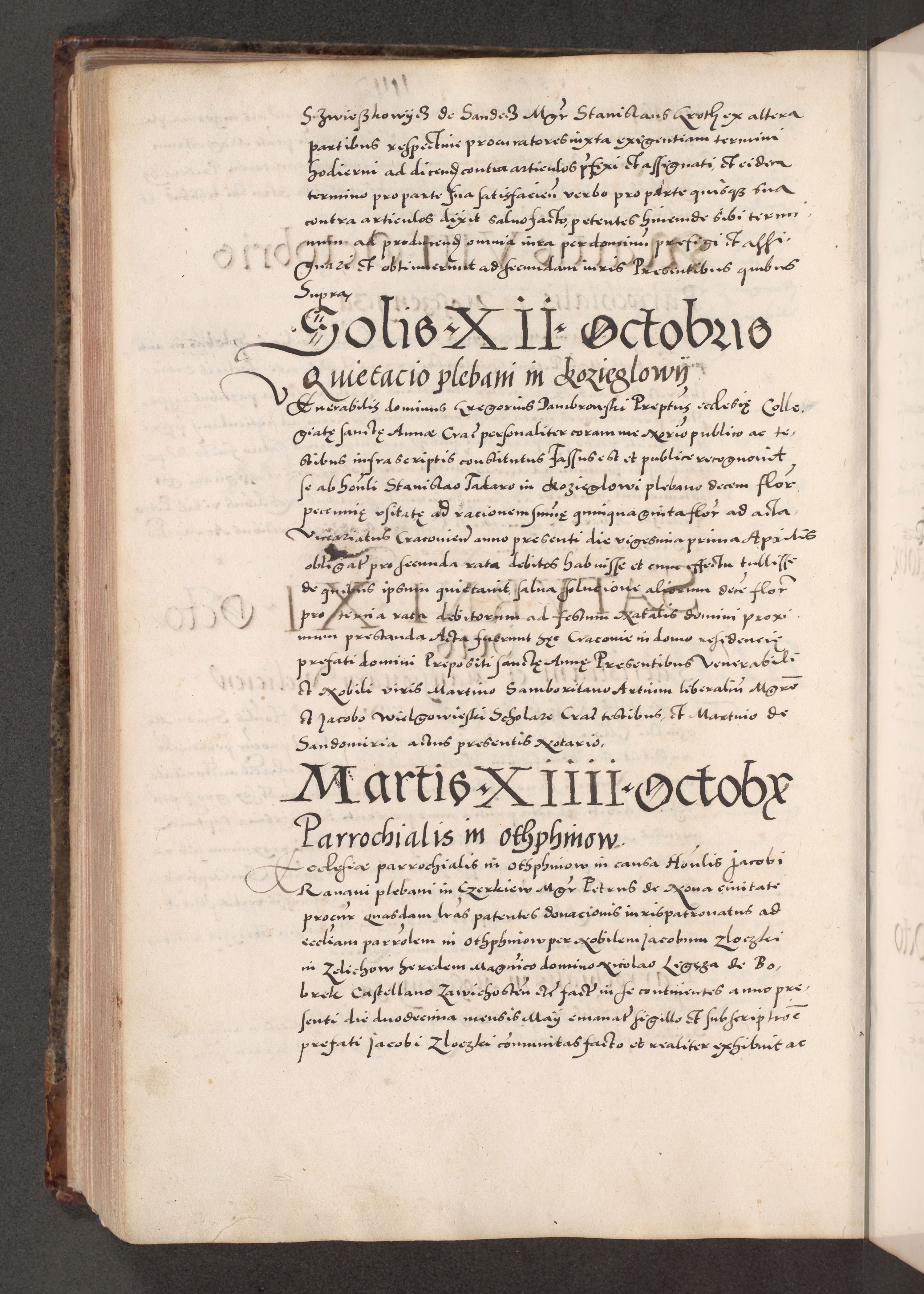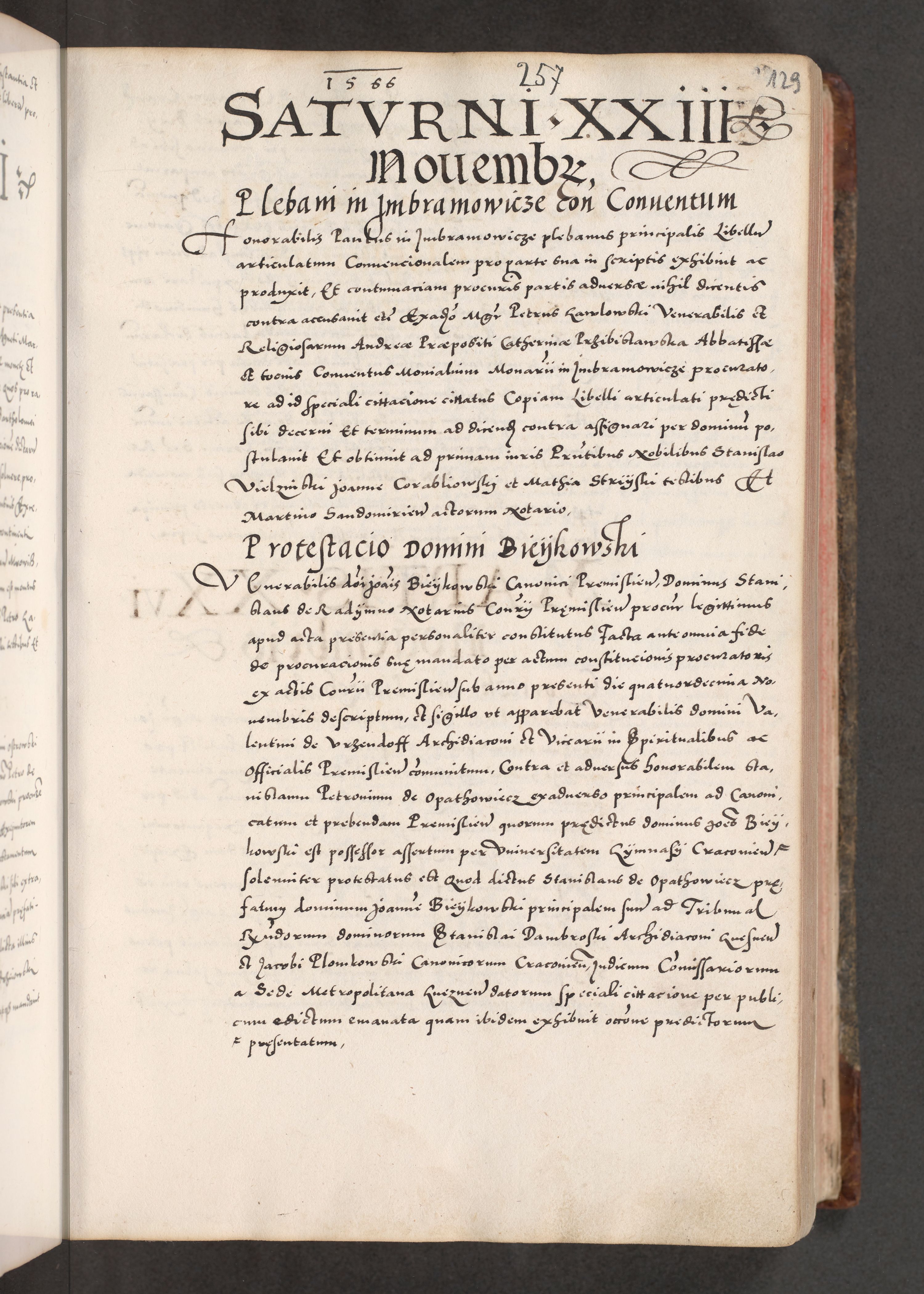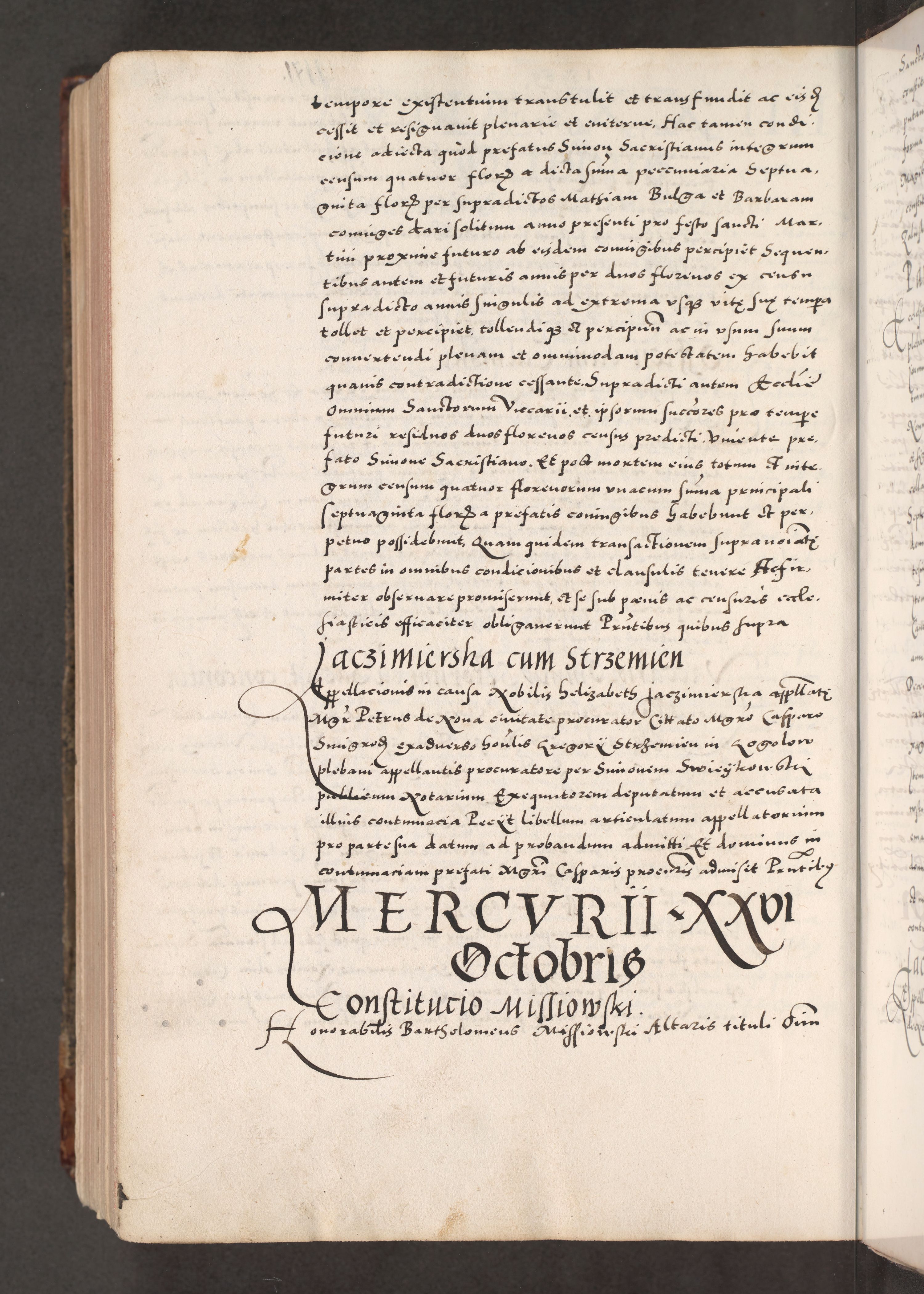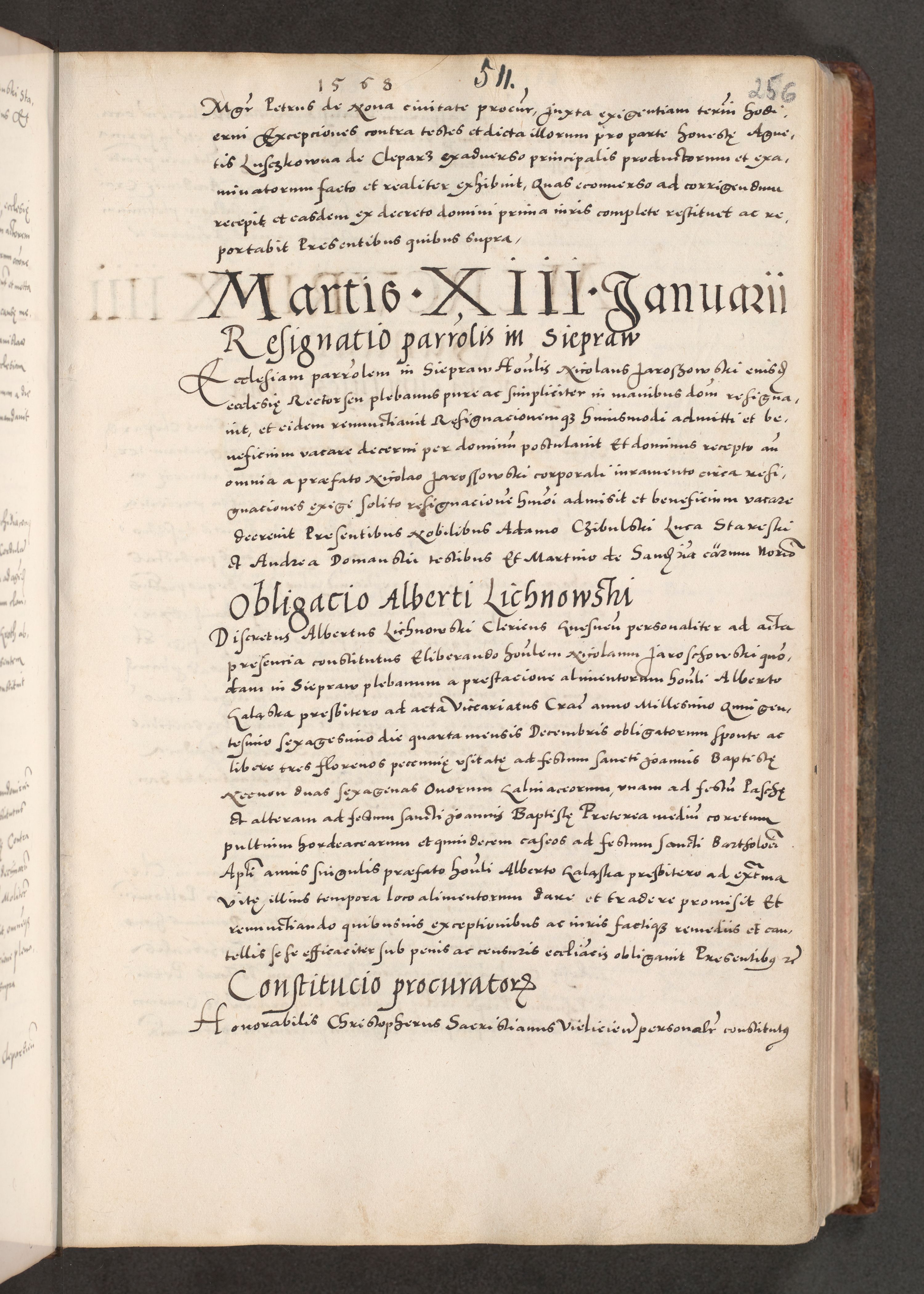 Acta actorum causarum, sententiarum tam diffinitivarum quam interloquutoriarum, decretorum, obligationum, quietationum, constitutionum procuratorum etc. coram reverendo domino Martino Izdbienski de Russiecz archidiacono Posnaniensi, custode et in spiritualibus vicario generali Cracoviensi, ad annum Domini millesimum quingesimum sexagesimum quintum, cuius indictio octava, pontificatus Pii pape, annus sextus, continuantur