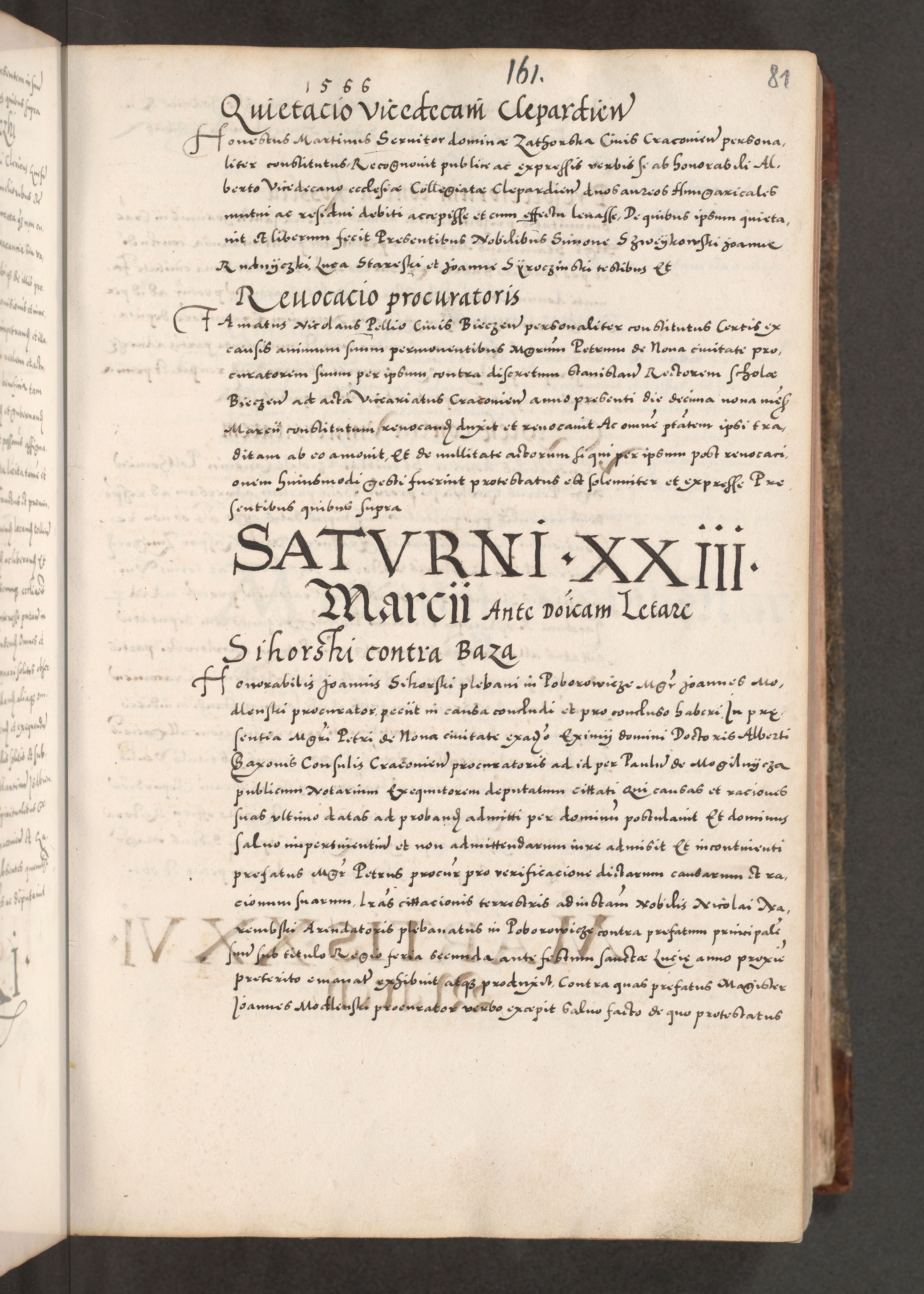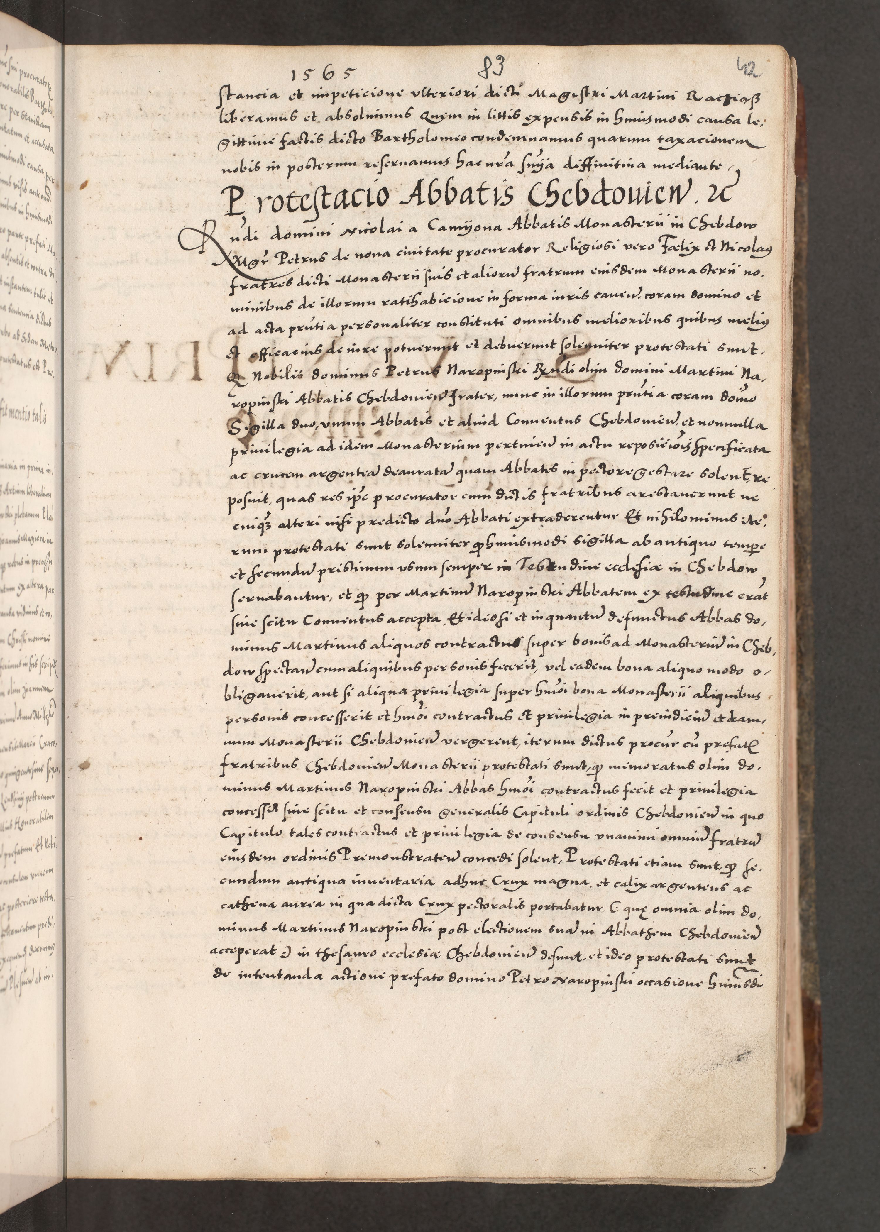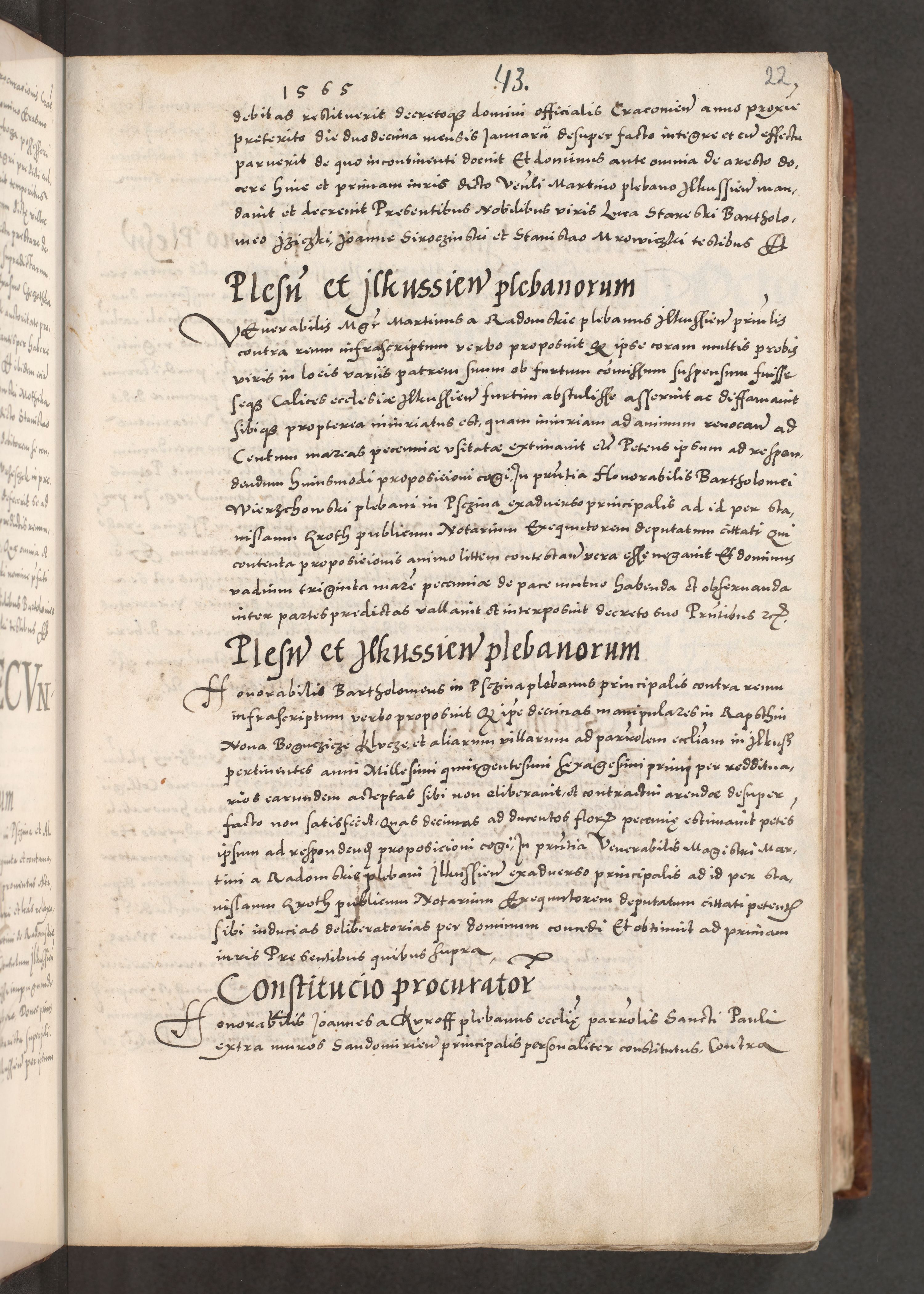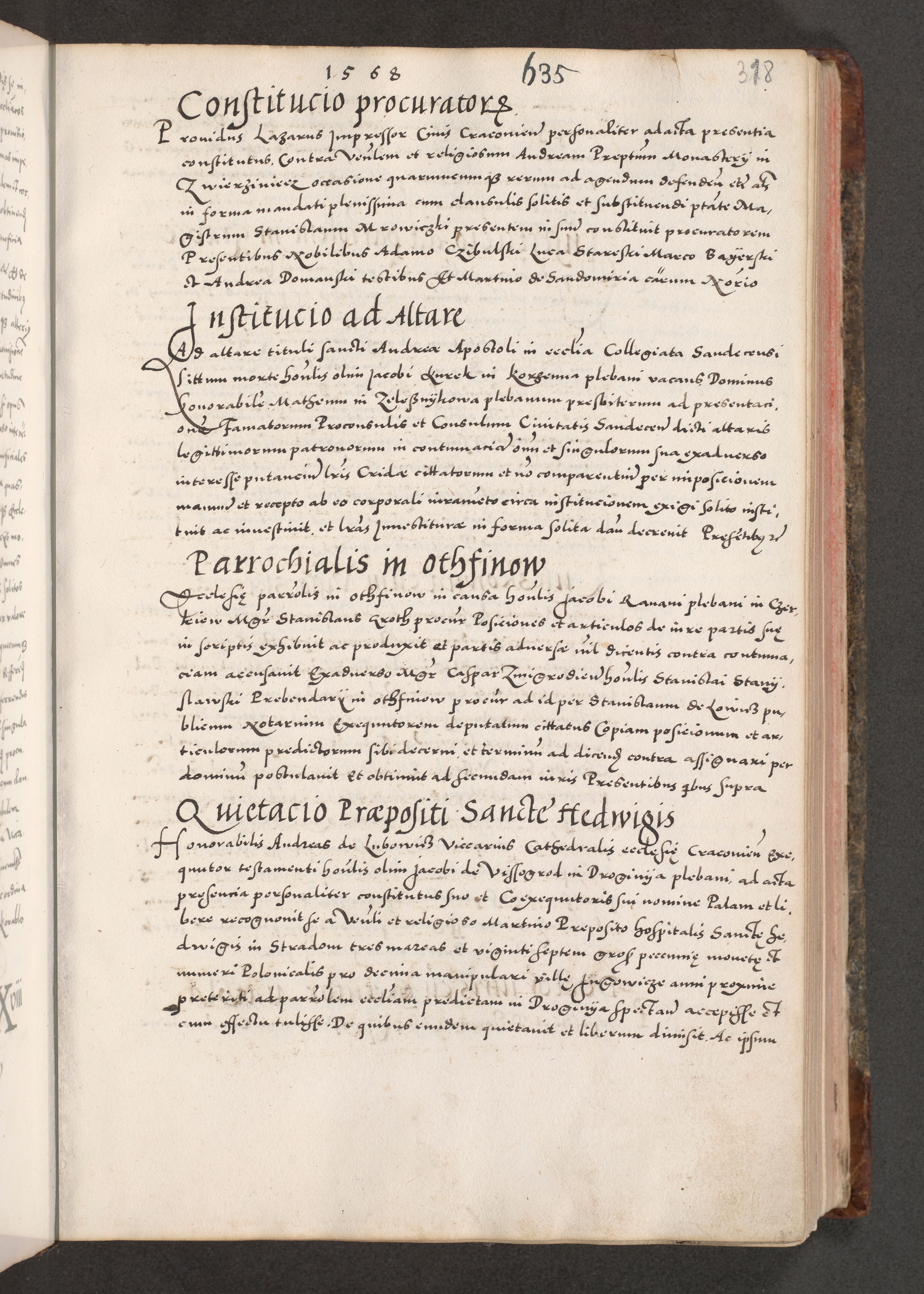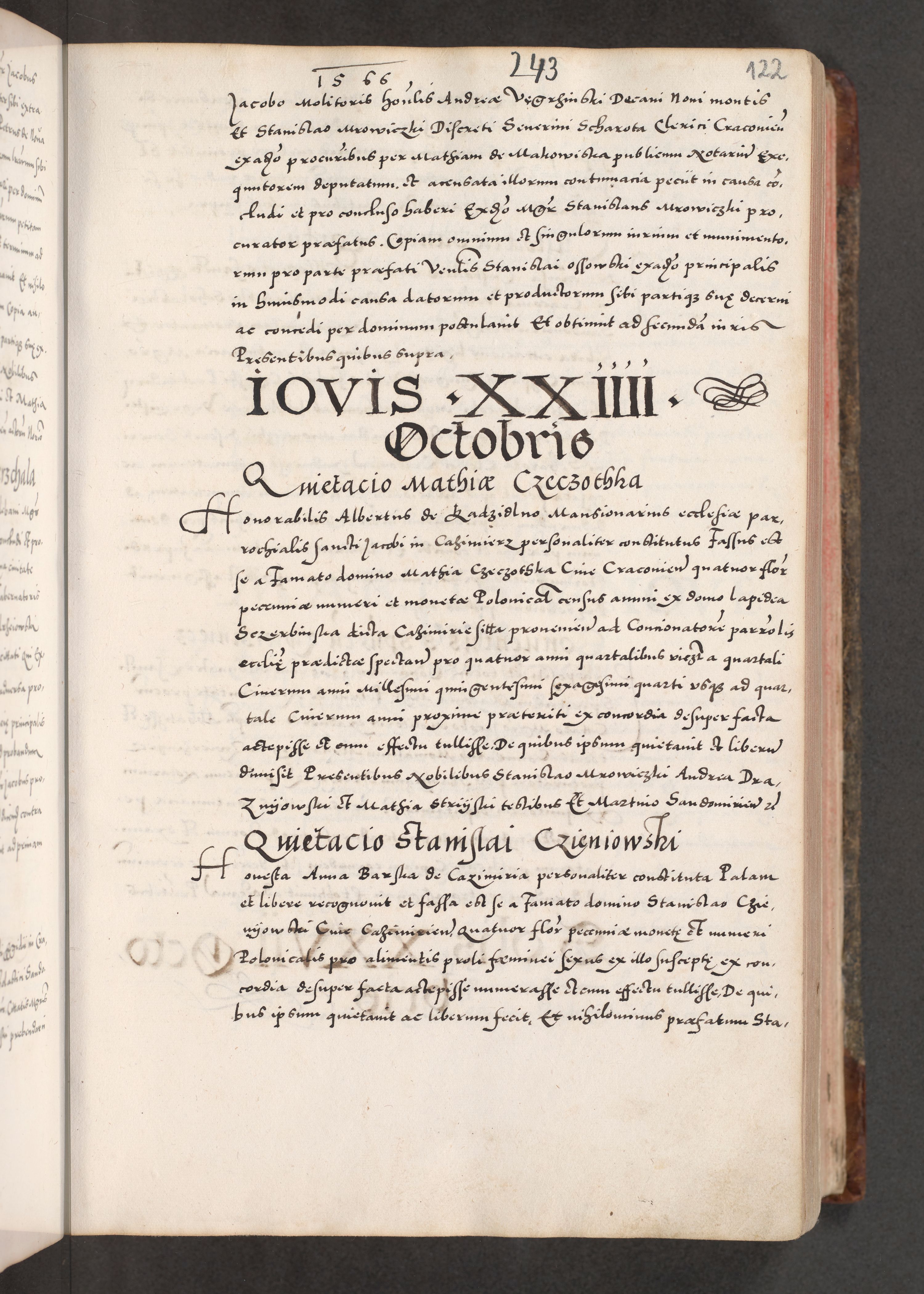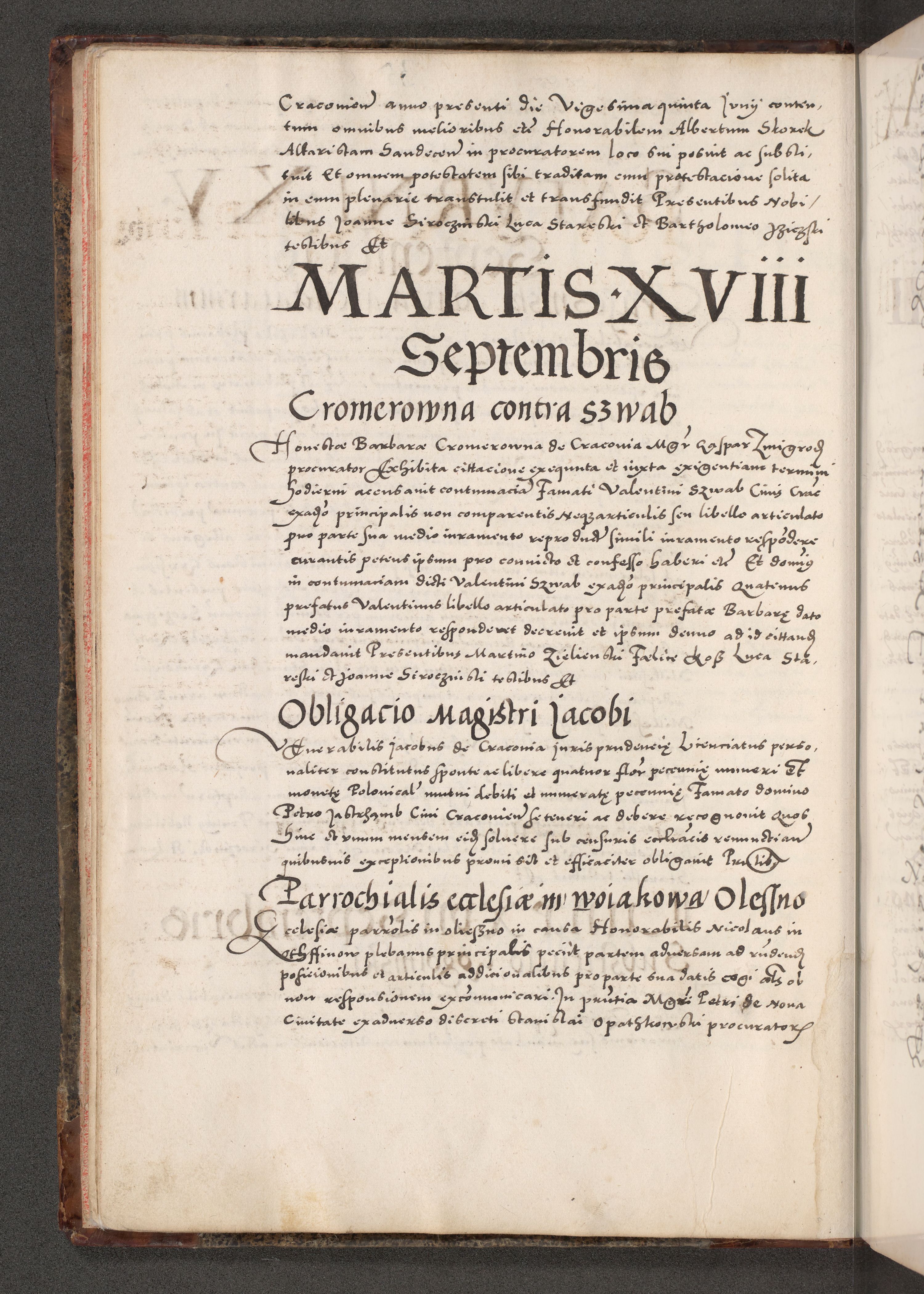 Acta actorum causarum, sententiarum tam diffinitivarum quam interloquutoriarum, decretorum, obligationum, quietationum, constitutionum procuratorum etc. coram reverendo domino Martino Izdbienski de Russiecz archidiacono Posnaniensi, custode et in spiritualibus vicario generali Cracoviensi, ad annum Domini millesimum quingesimum sexagesimum quintum, cuius indictio octava, pontificatus Pii pape, annus sextus, continuantur
