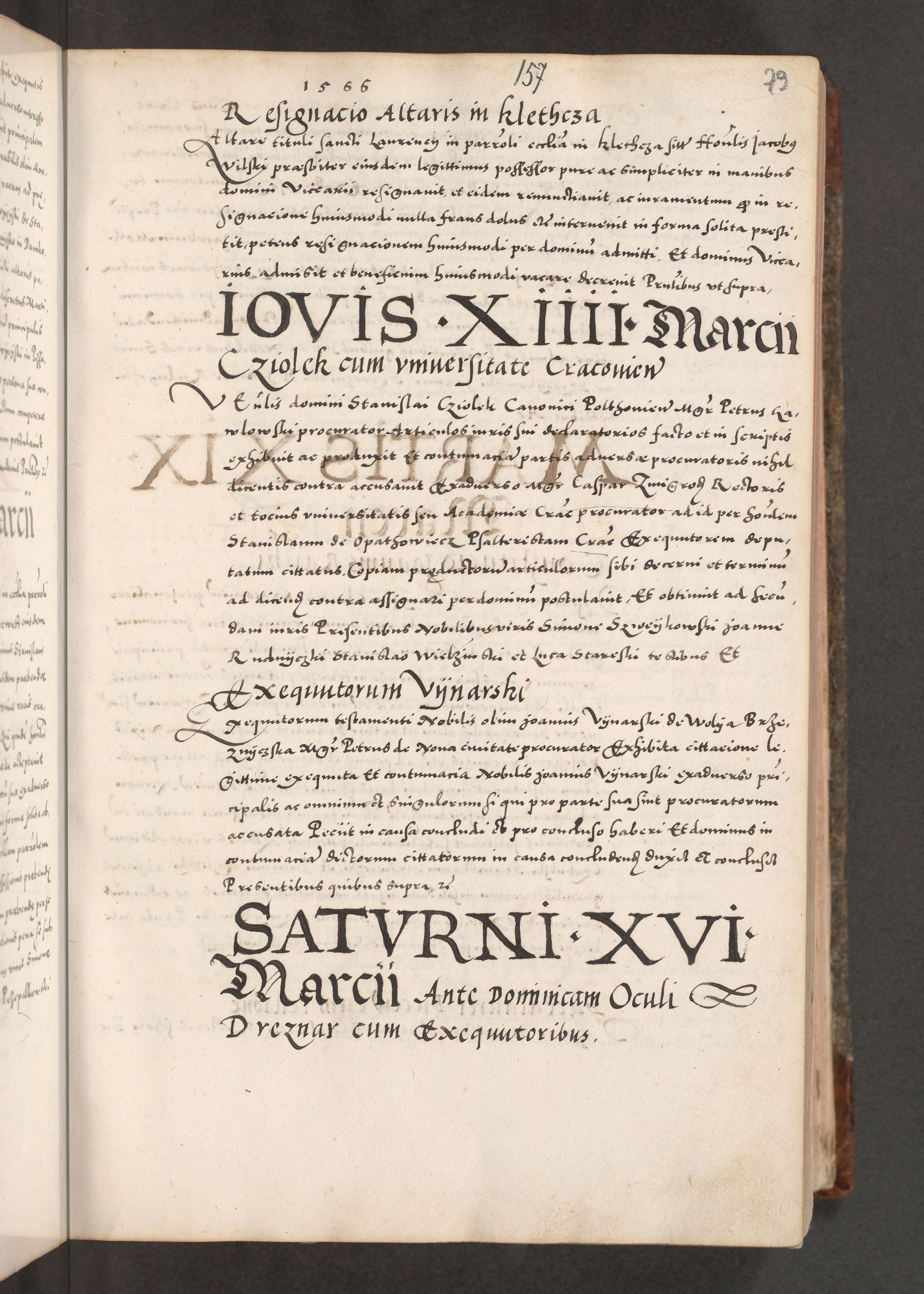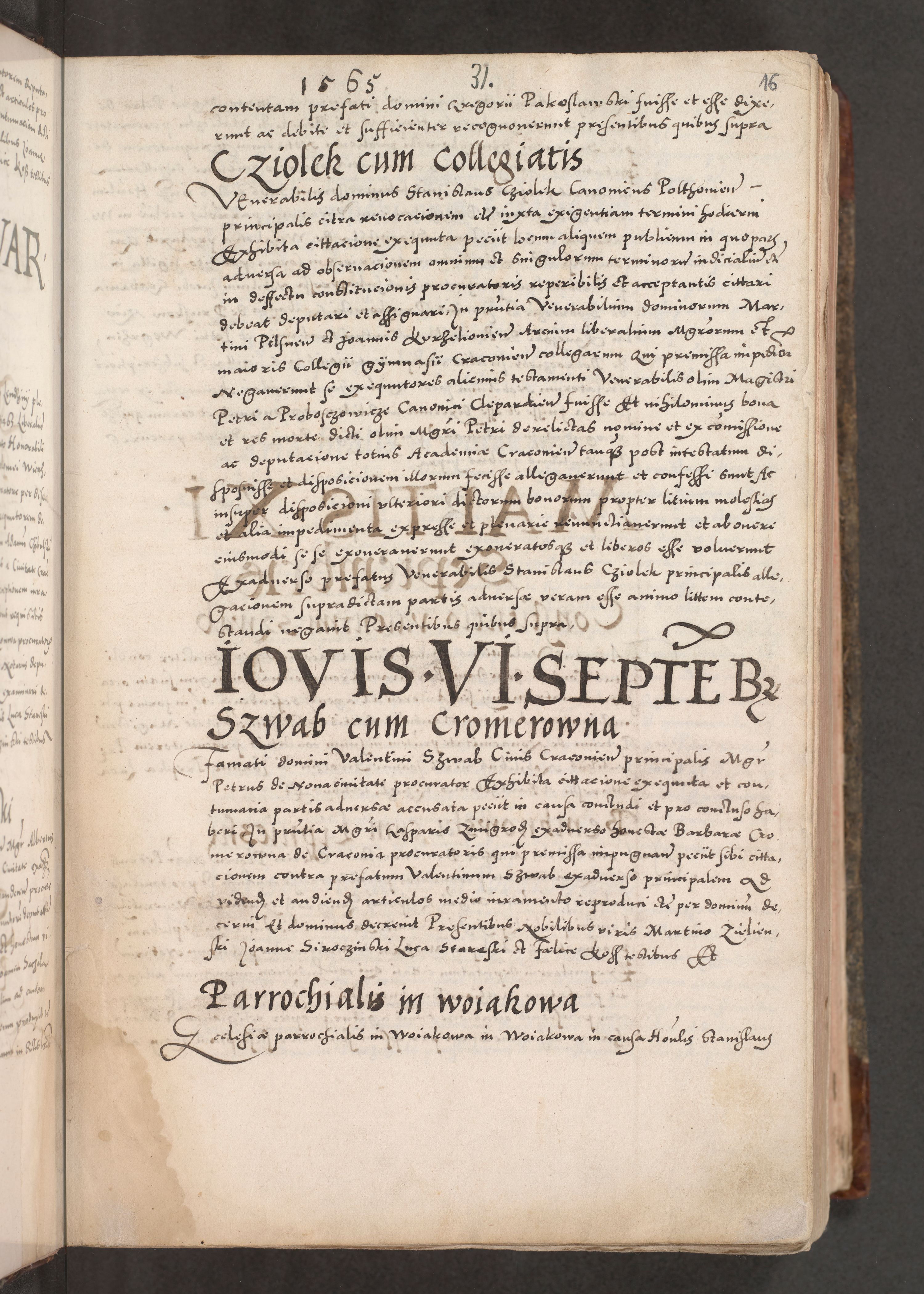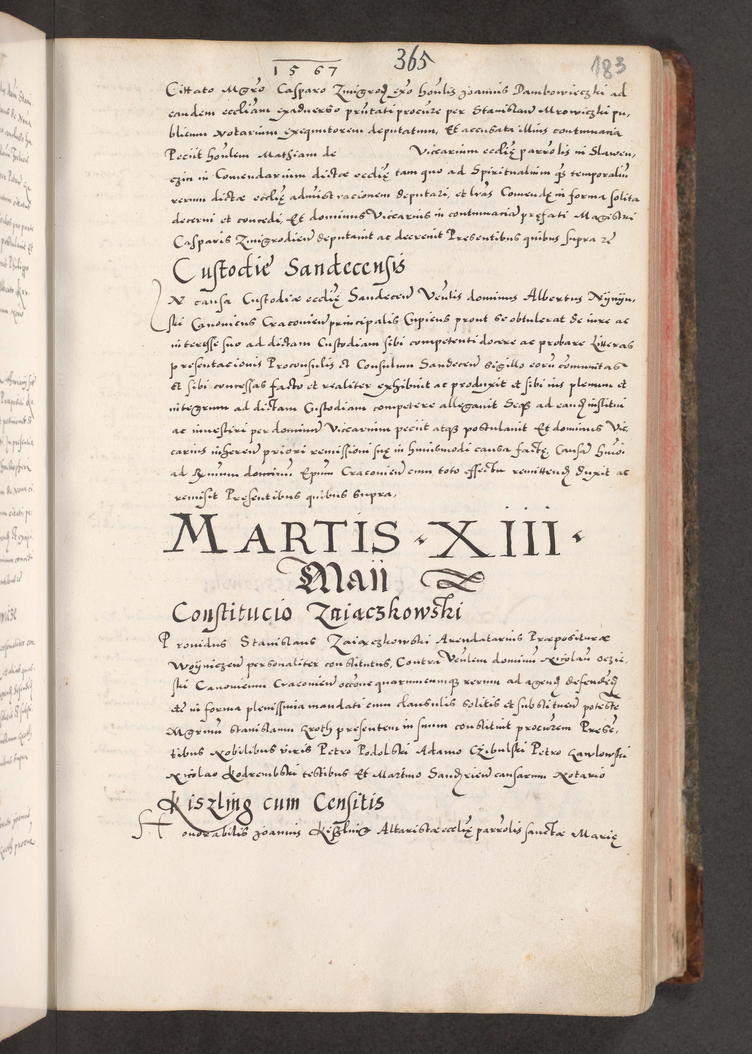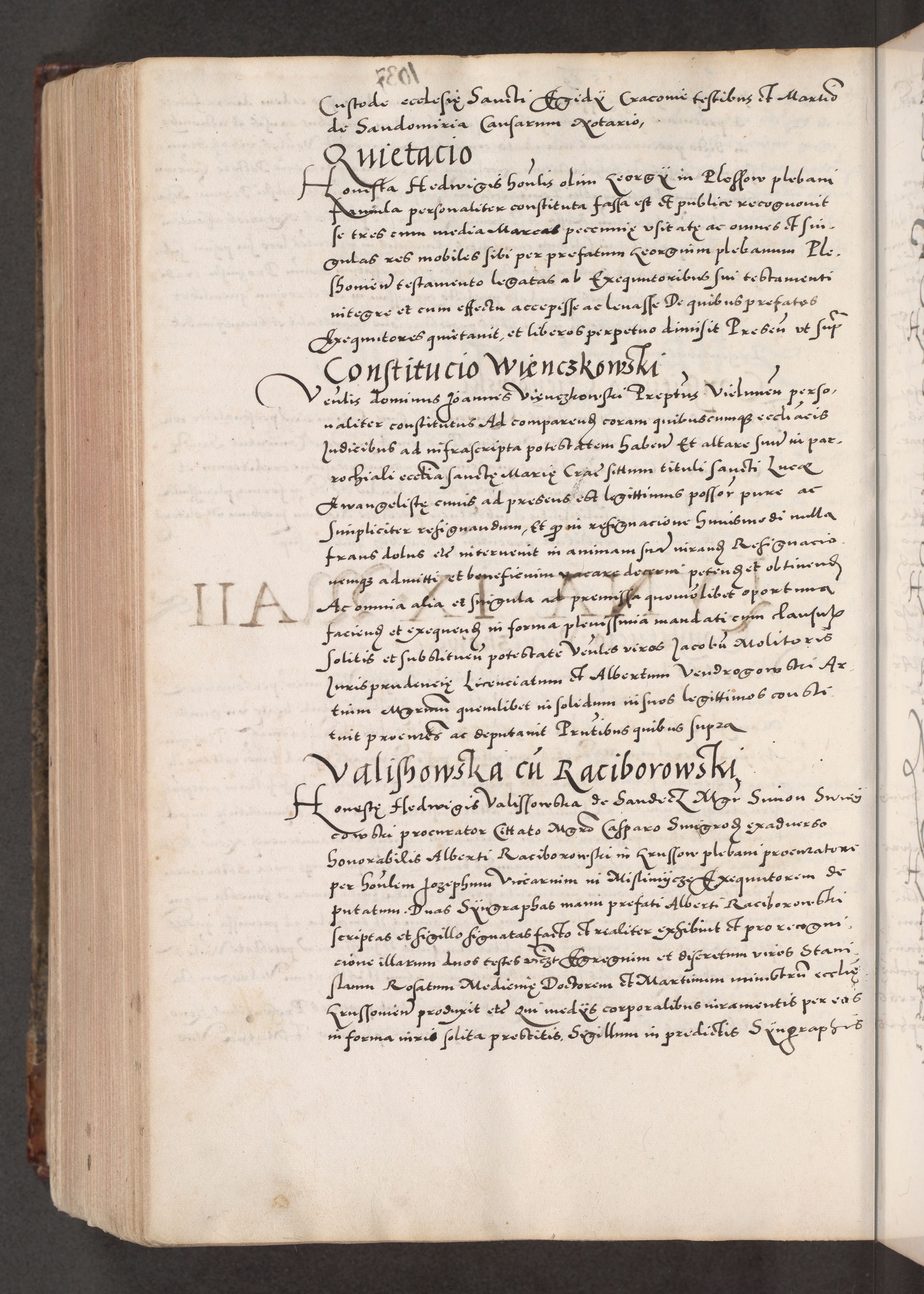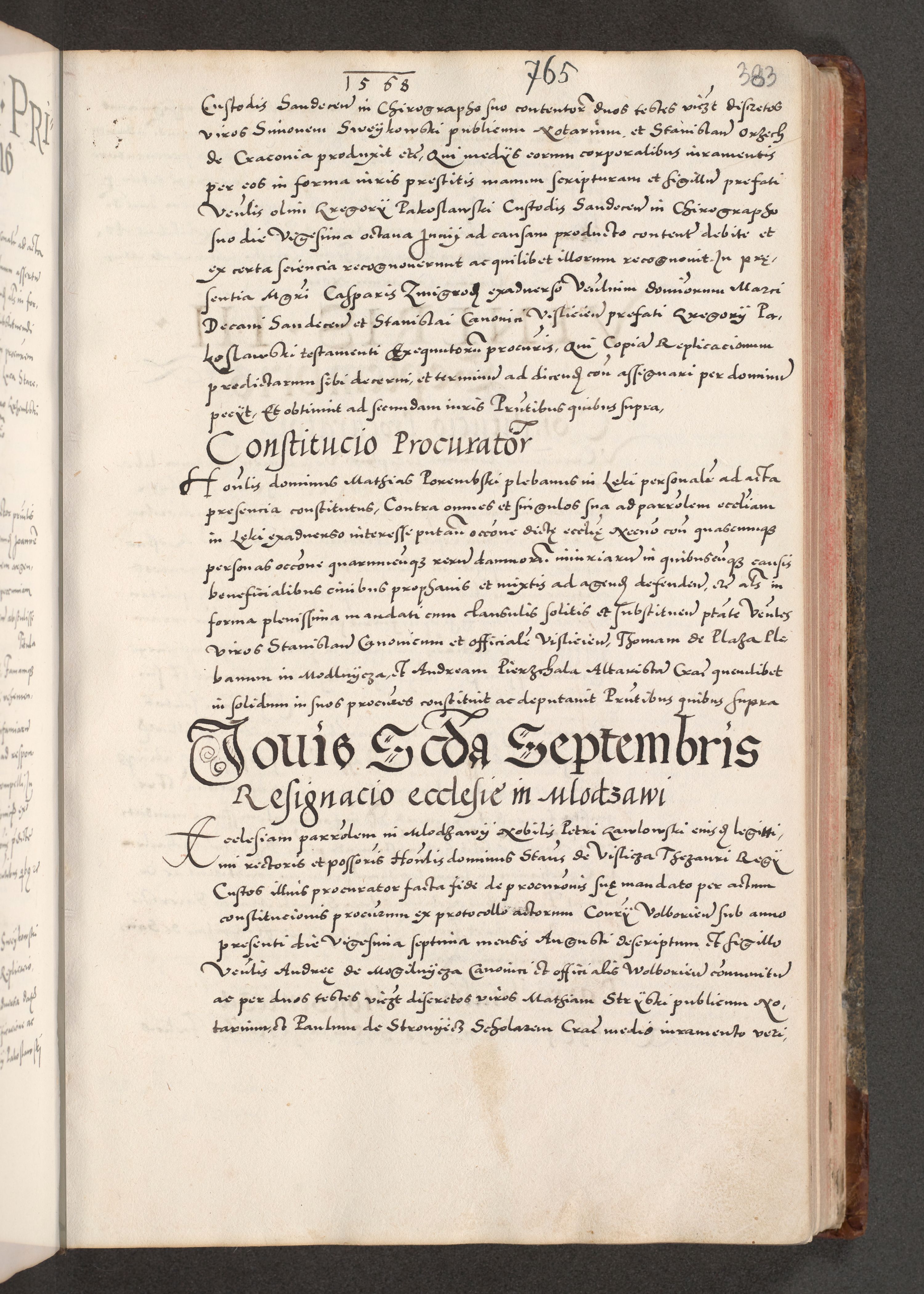 Acta actorum causarum, sententiarum tam diffinitivarum quam interloquutoriarum, decretorum, obligationum, quietationum, constitutionum procuratorum etc. coram reverendo domino Martino Izdbienski de Russiecz archidiacono Posnaniensi, custode et in spiritualibus vicario generali Cracoviensi, ad annum Domini millesimum quingesimum sexagesimum quintum, cuius indictio octava, pontificatus Pii pape, annus sextus, continuantur