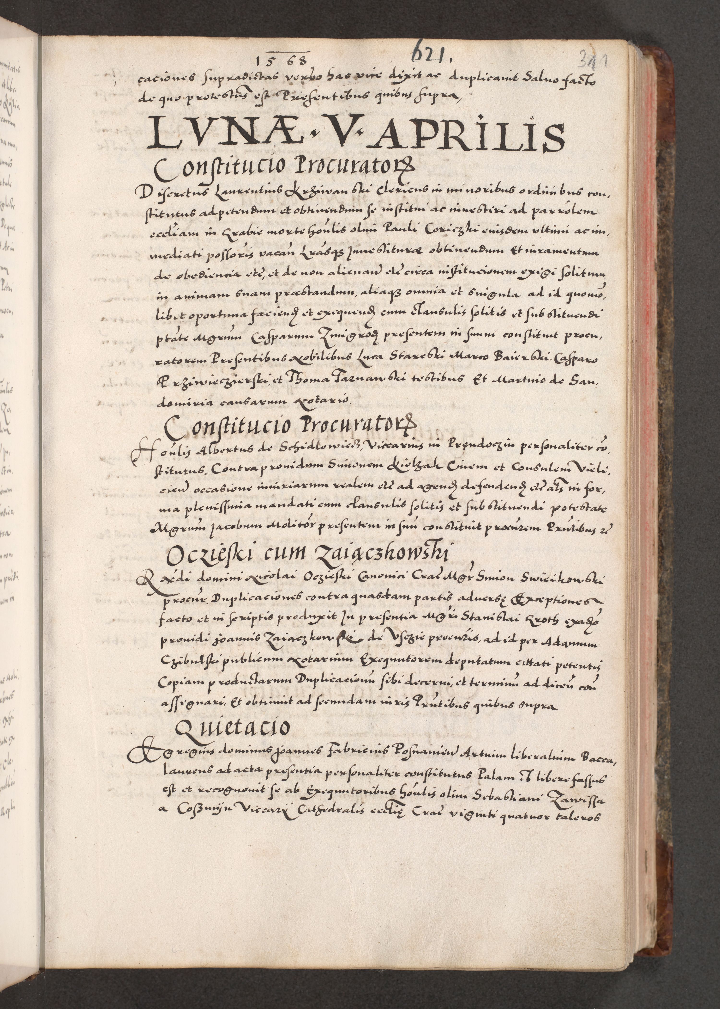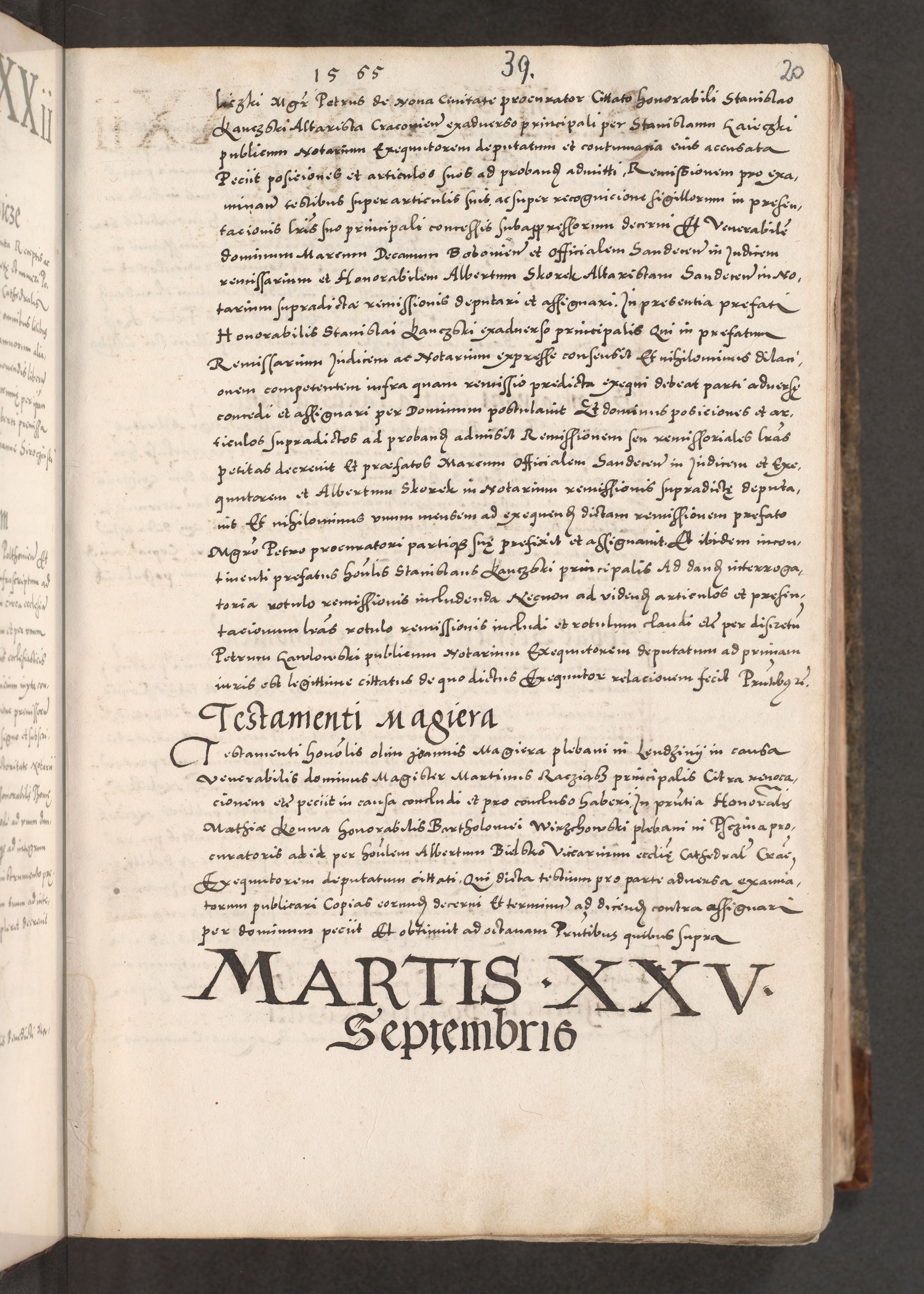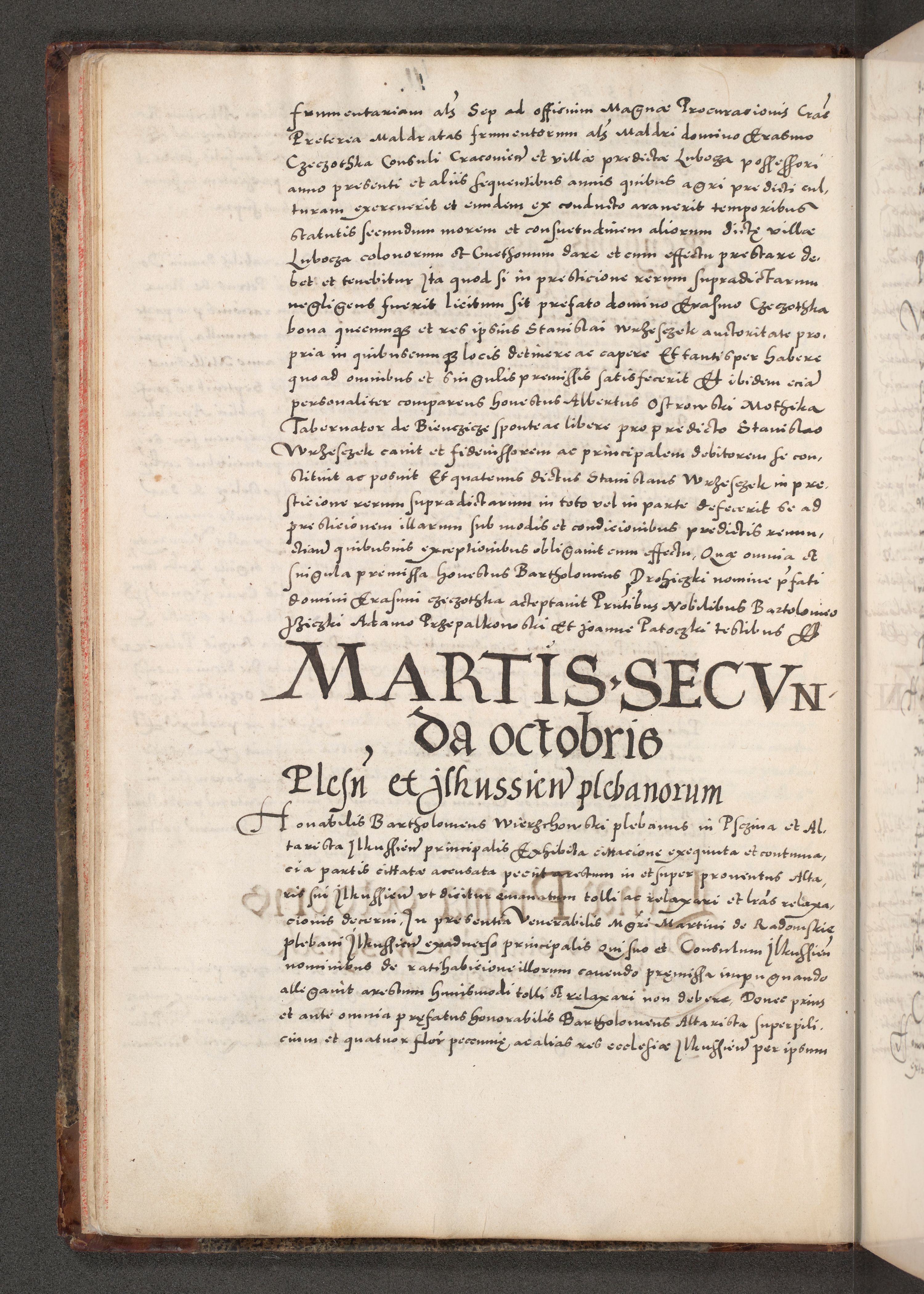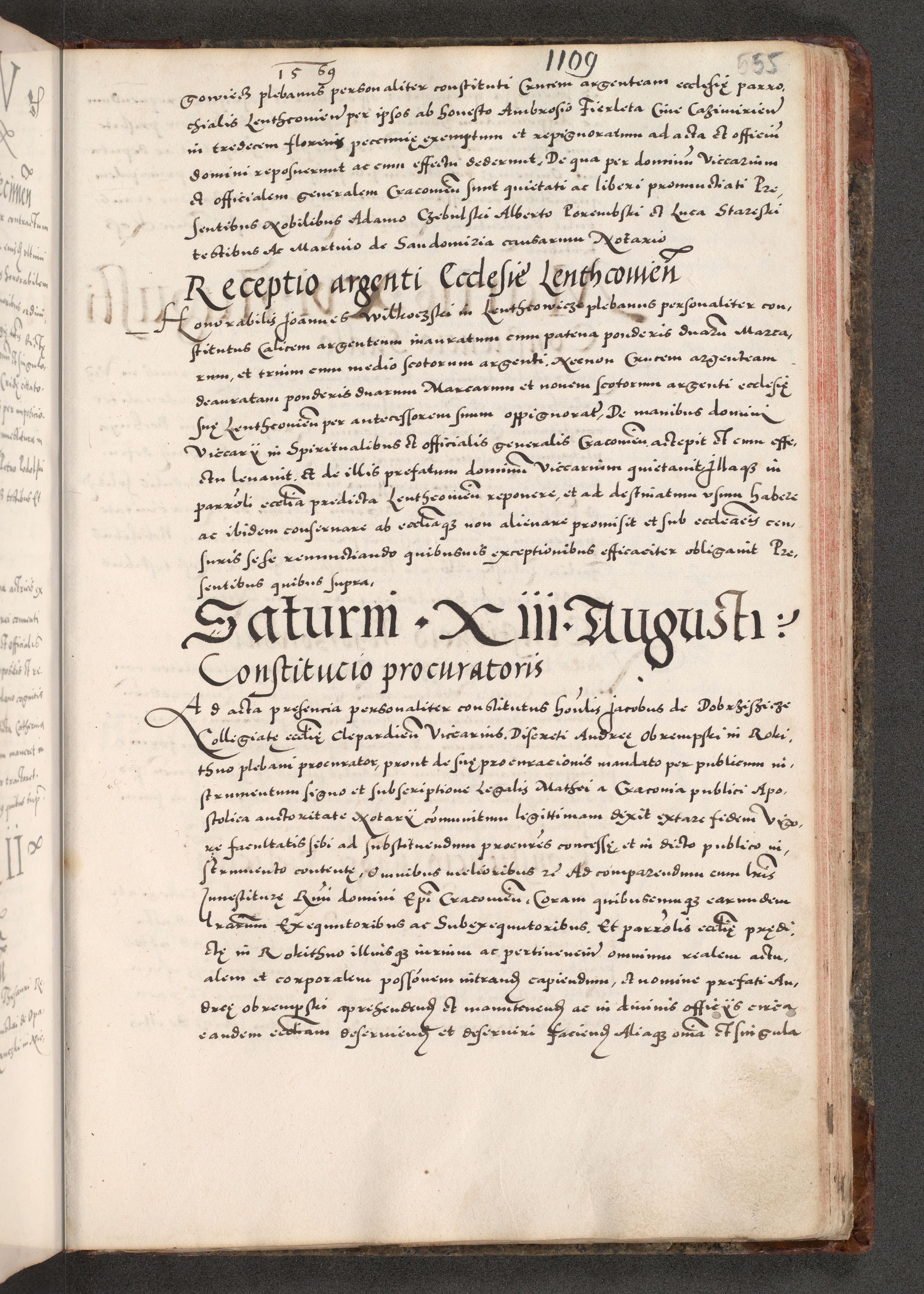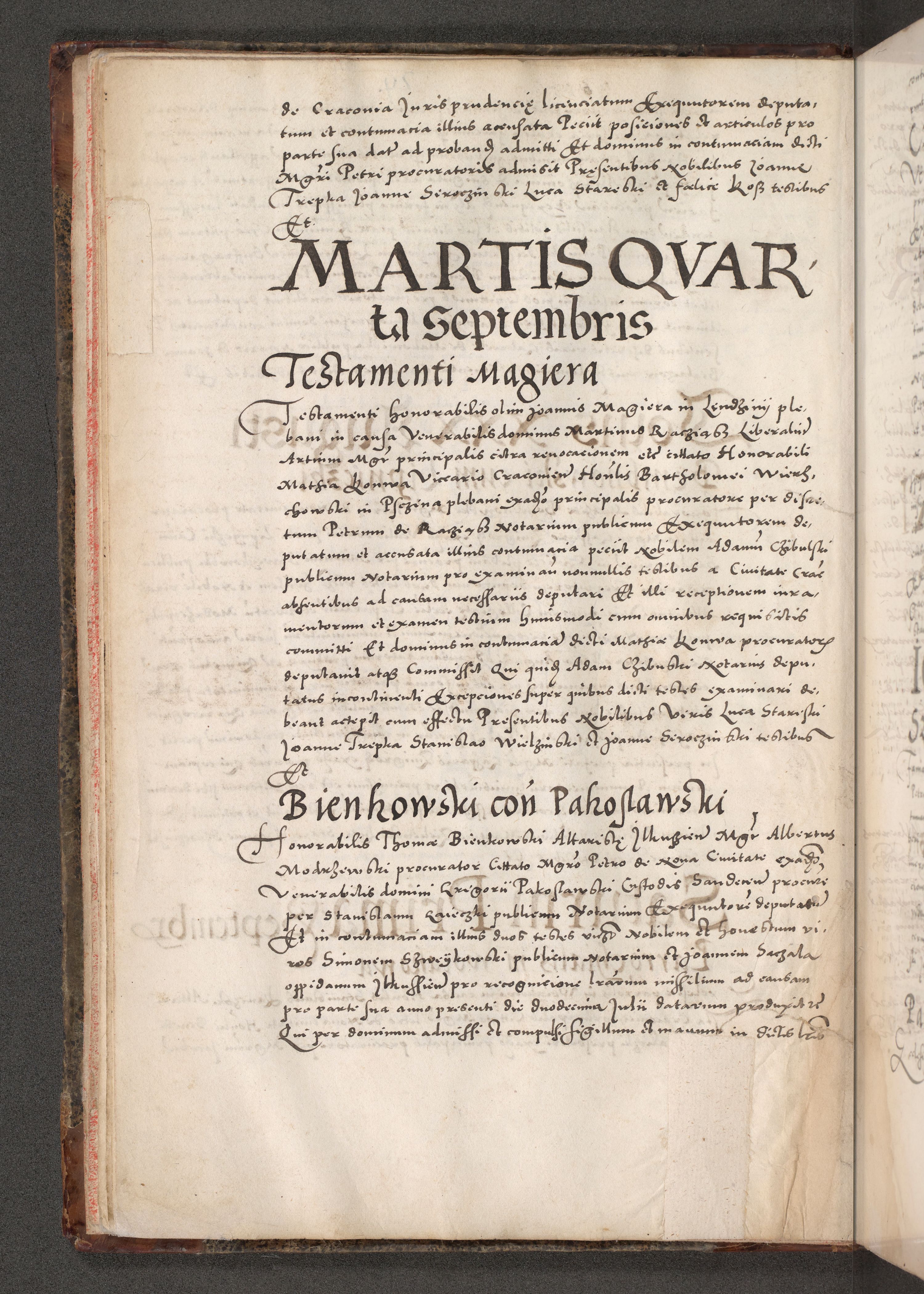 Acta actorum causarum, sententiarum tam diffinitivarum quam interloquutoriarum, decretorum, obligationum, quietationum, constitutionum procuratorum etc. coram reverendo domino Martino Izdbienski de Russiecz archidiacono Posnaniensi, custode et in spiritualibus vicario generali Cracoviensi, ad annum Domini millesimum quingesimum sexagesimum quintum, cuius indictio octava, pontificatus Pii pape, annus sextus, continuantur
