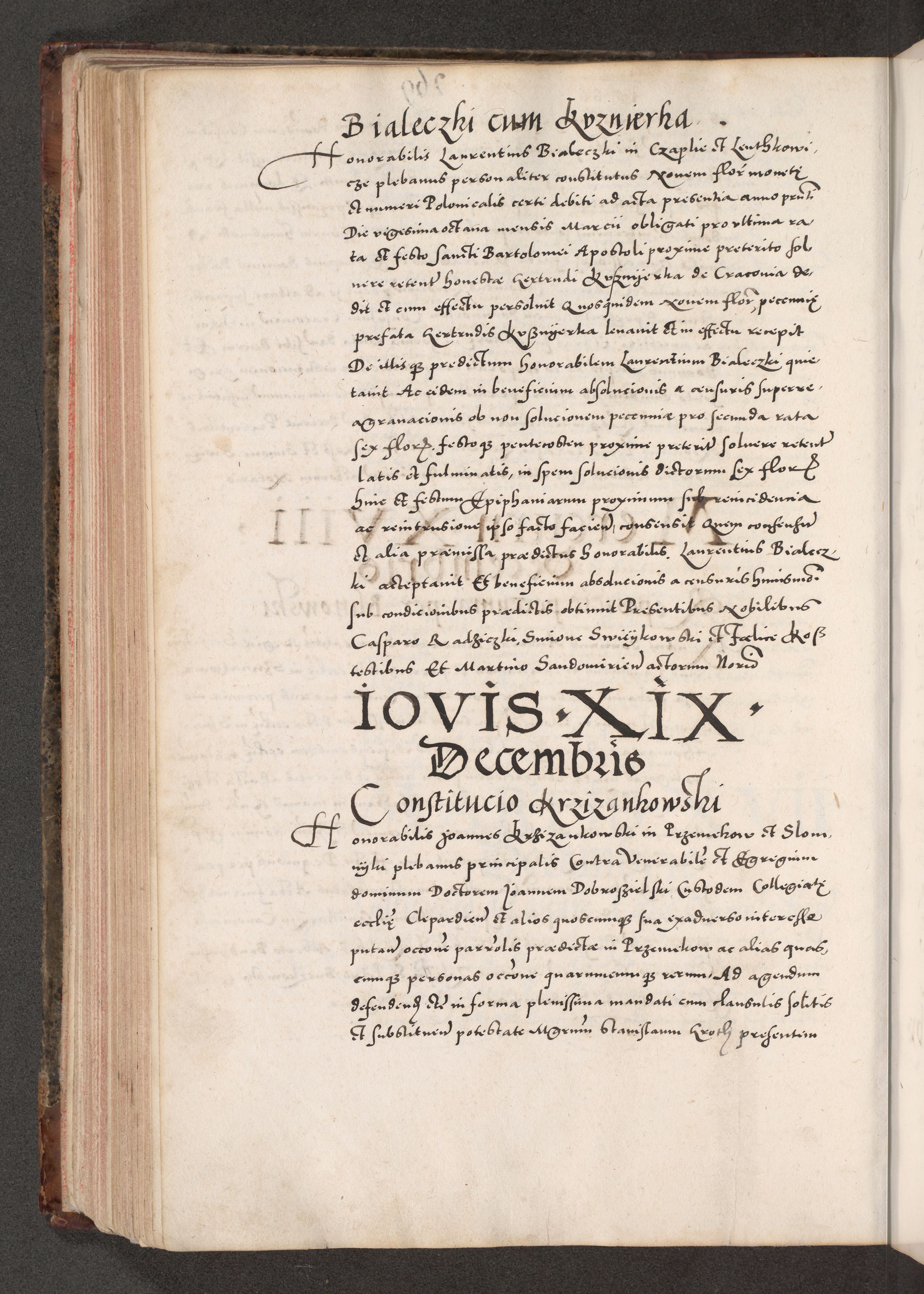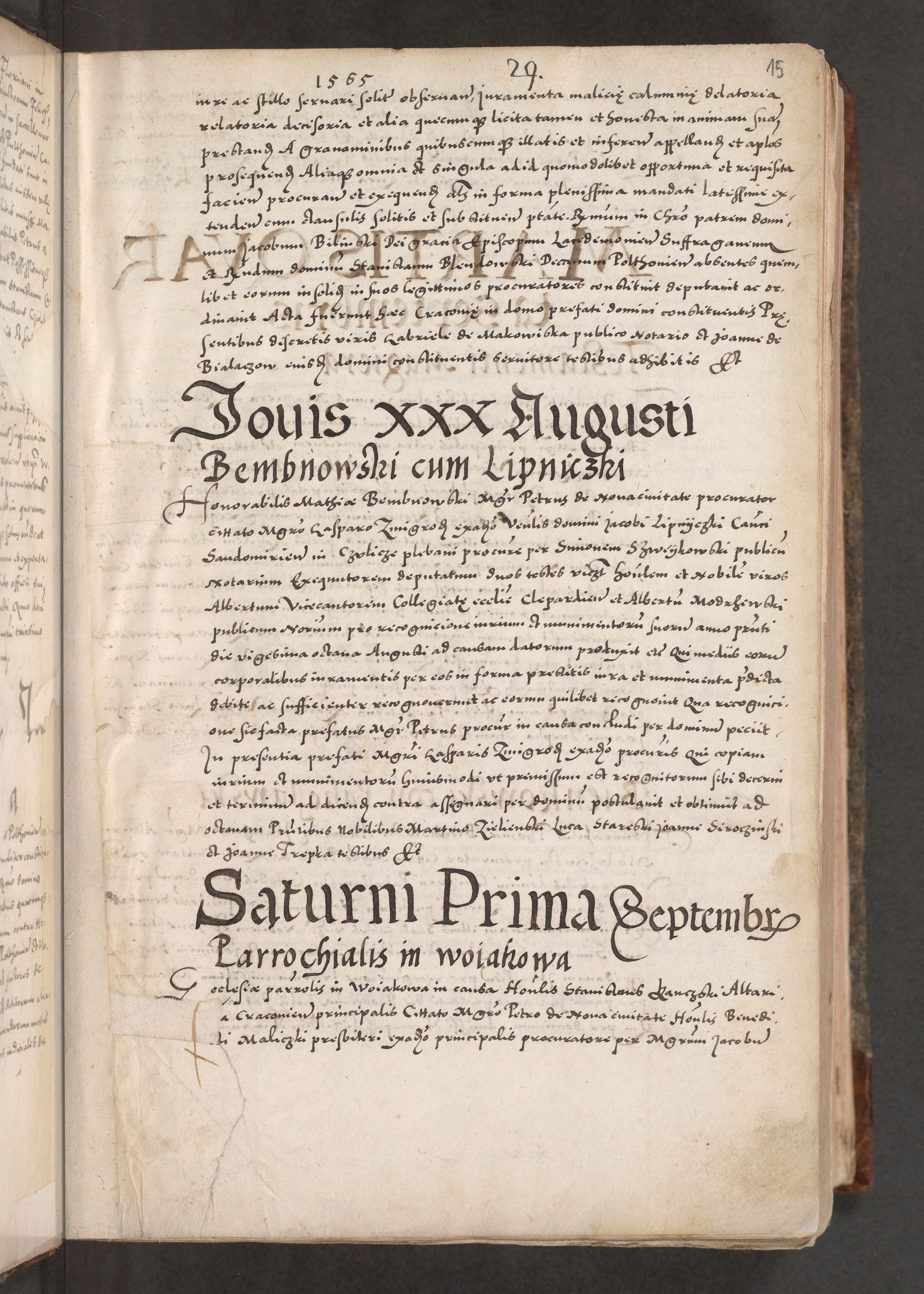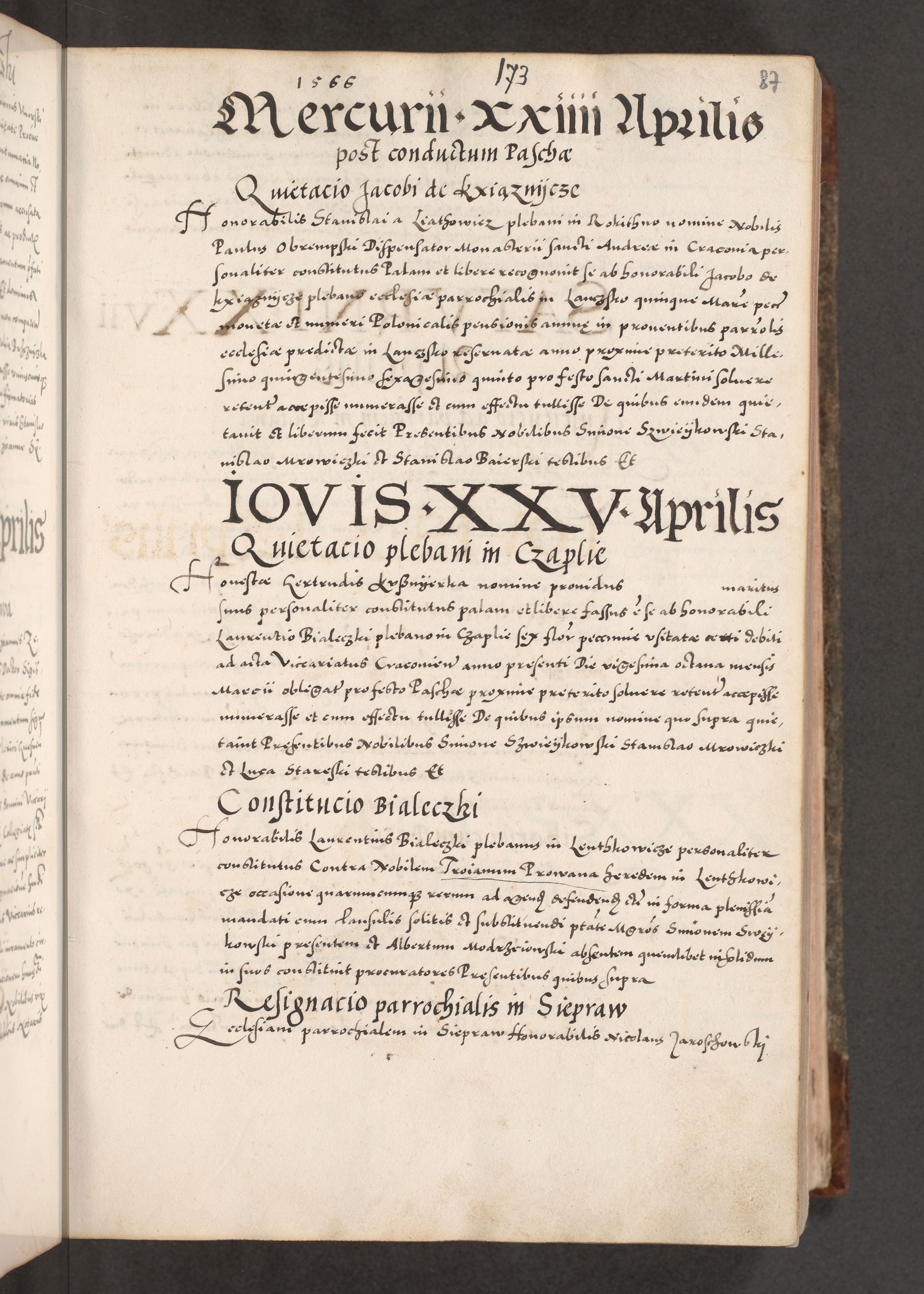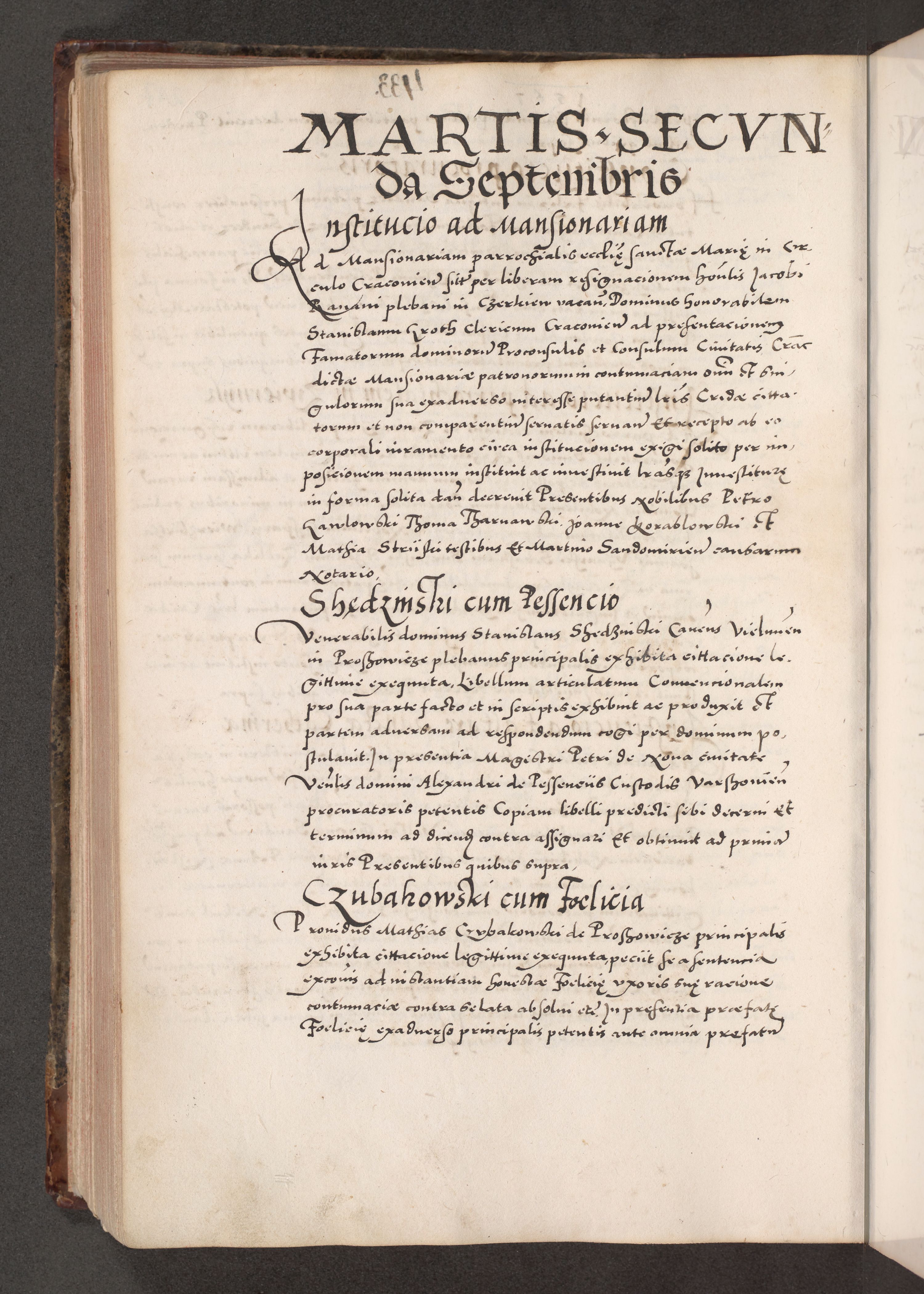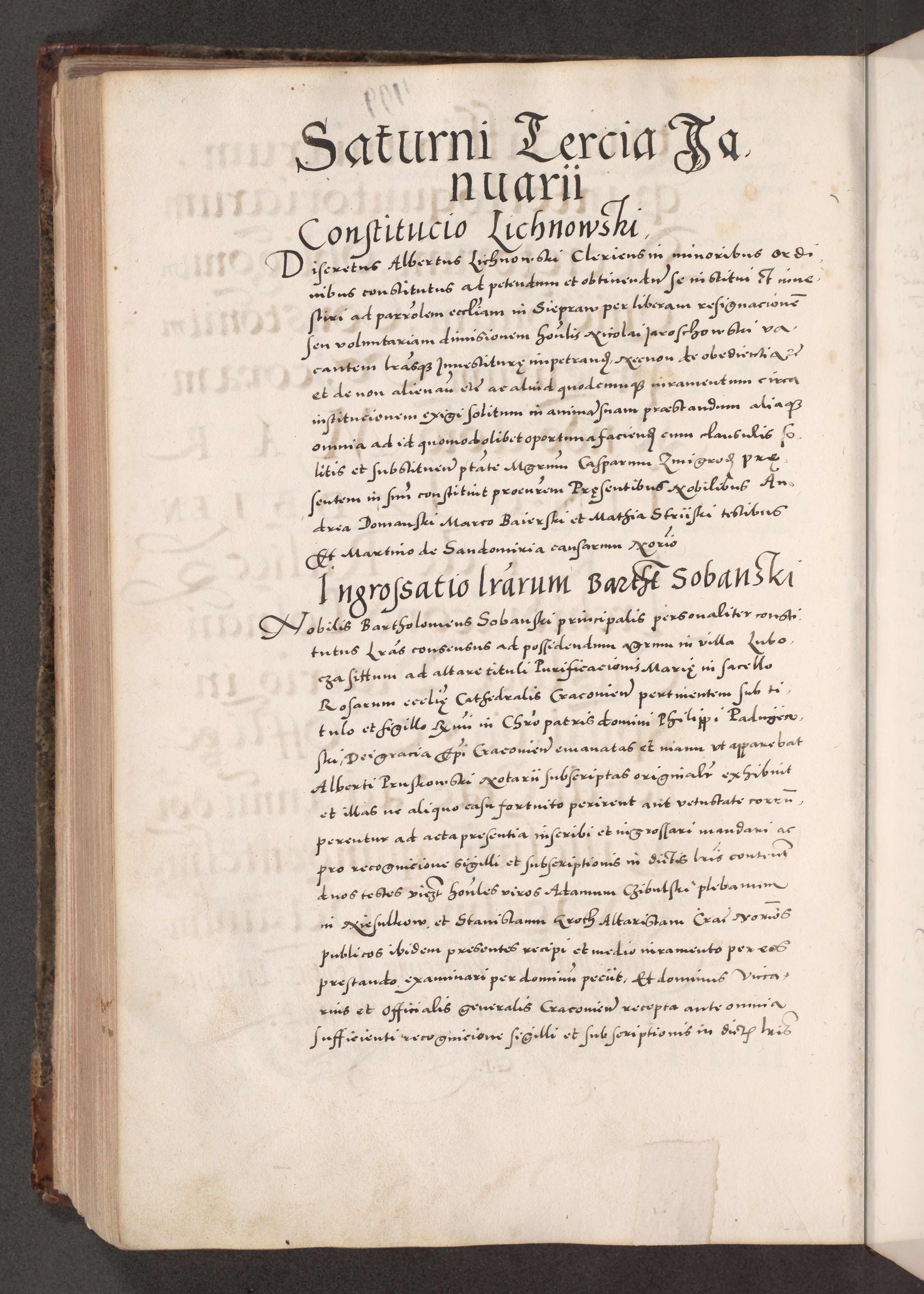 Acta actorum causarum, sententiarum tam diffinitivarum quam interloquutoriarum, decretorum, obligationum, quietationum, constitutionum procuratorum etc. coram reverendo domino Martino Izdbienski de Russiecz archidiacono Posnaniensi, custode et in spiritualibus vicario generali Cracoviensi, ad annum Domini millesimum quingesimum sexagesimum quintum, cuius indictio octava, pontificatus Pii pape, annus sextus, continuantur