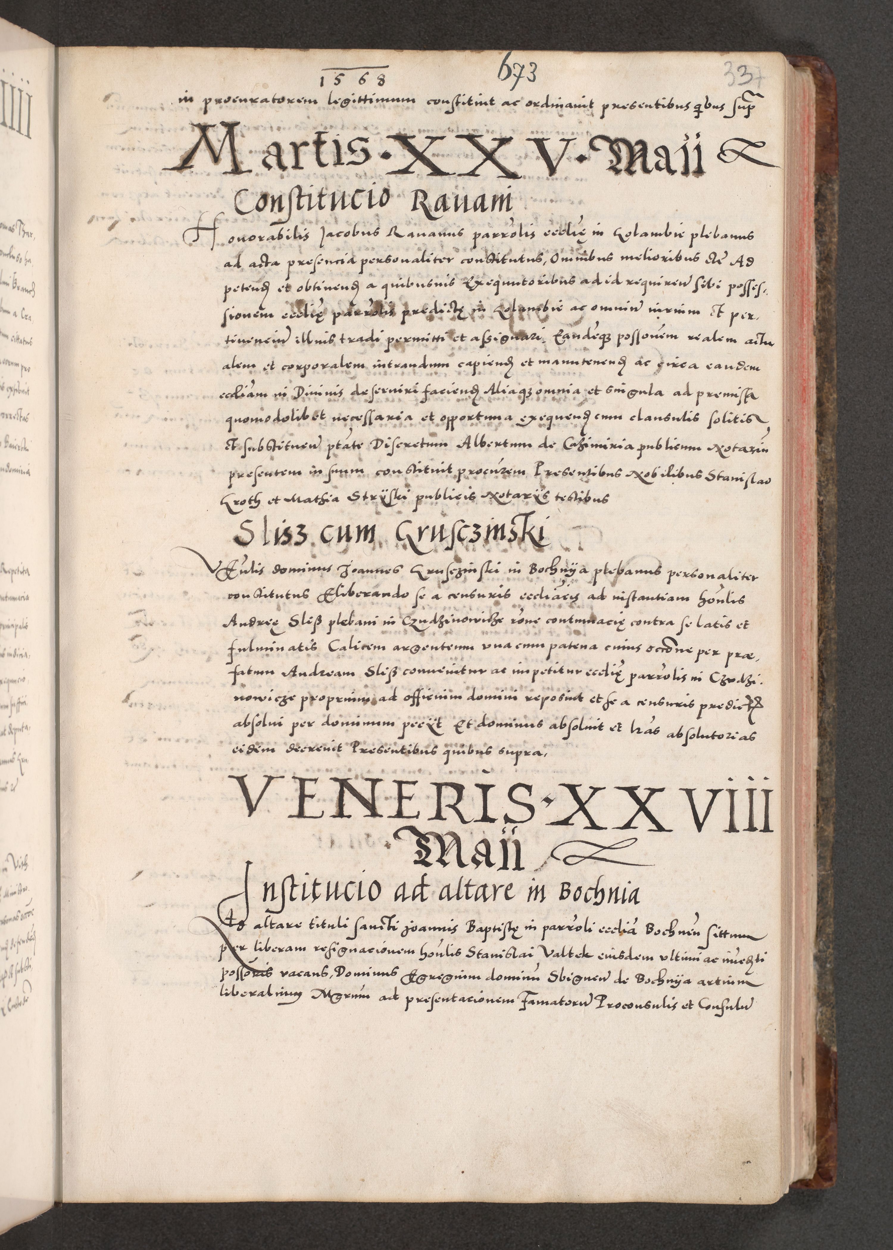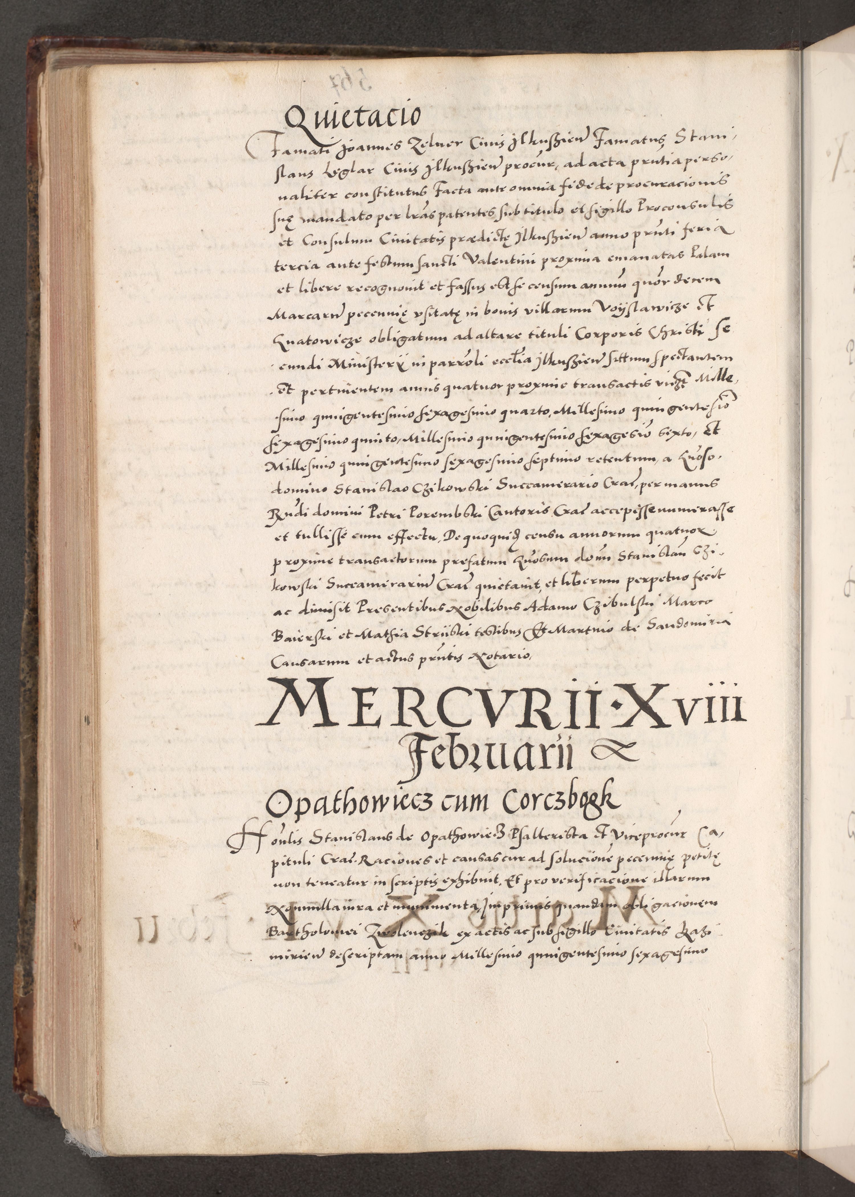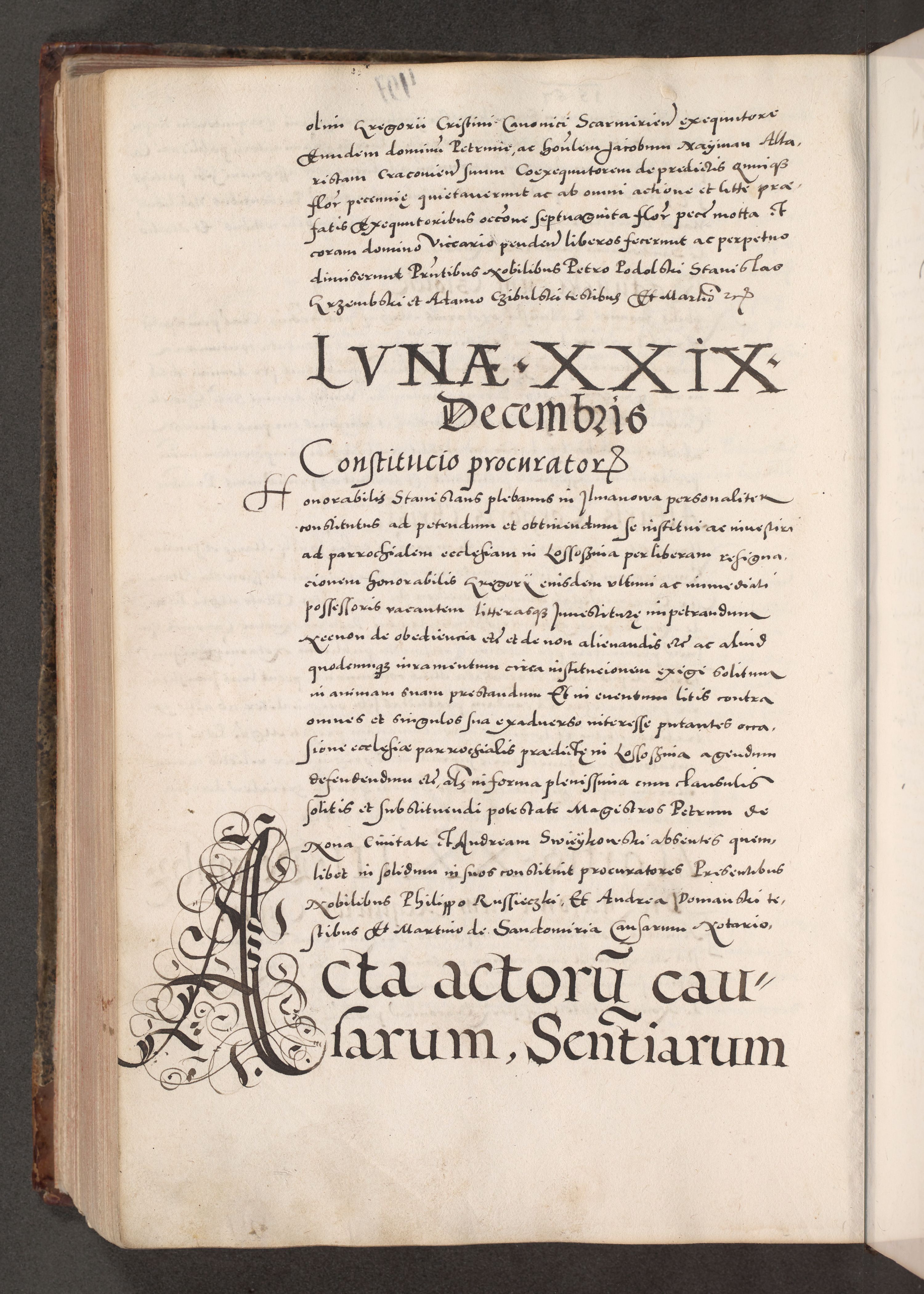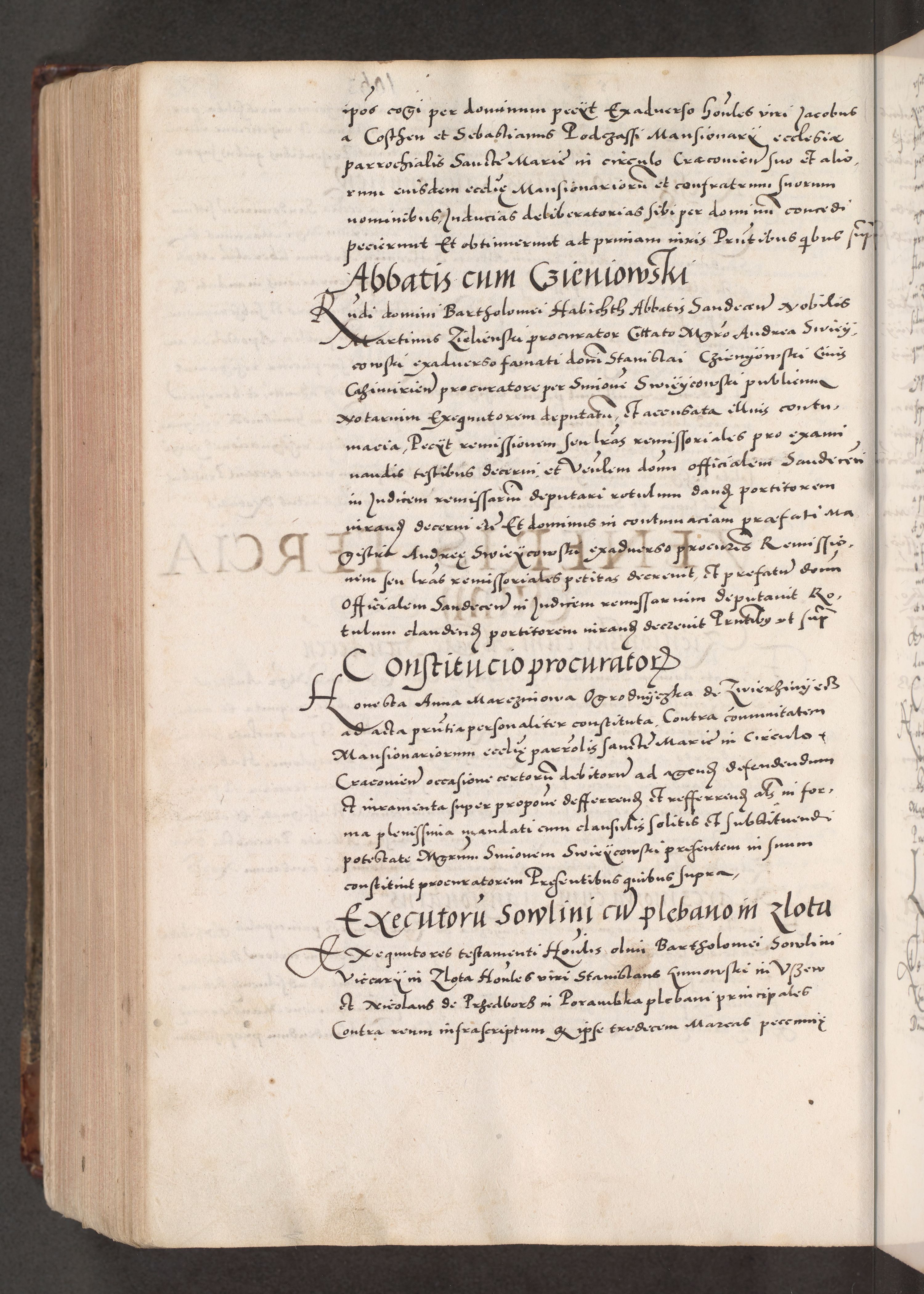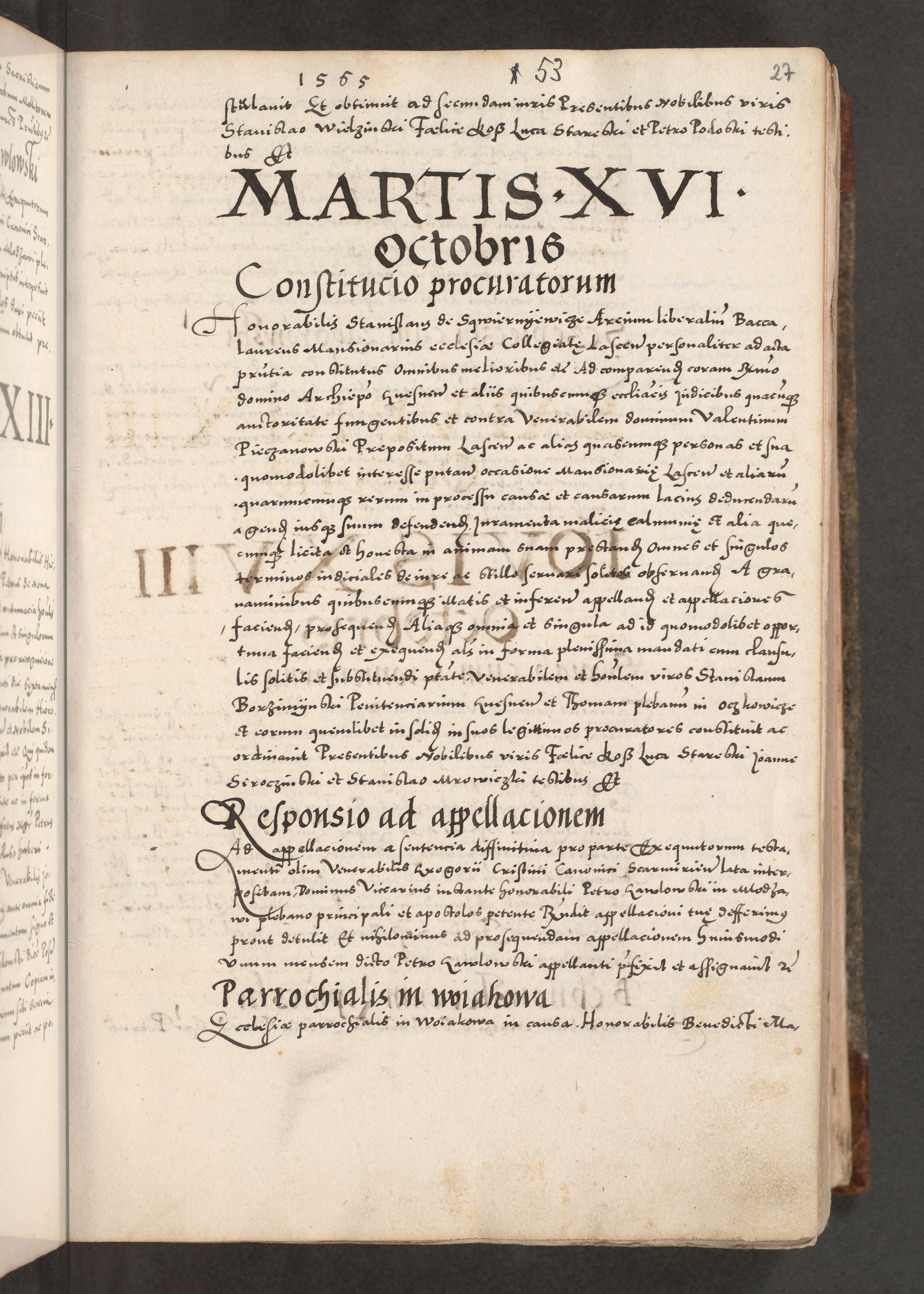 Acta actorum causarum, sententiarum tam diffinitivarum quam interloquutoriarum, decretorum, obligationum, quietationum, constitutionum procuratorum etc. coram reverendo domino Martino Izdbienski de Russiecz archidiacono Posnaniensi, custode et in spiritualibus vicario generali Cracoviensi, ad annum Domini millesimum quingesimum sexagesimum quintum, cuius indictio octava, pontificatus Pii pape, annus sextus, continuantur