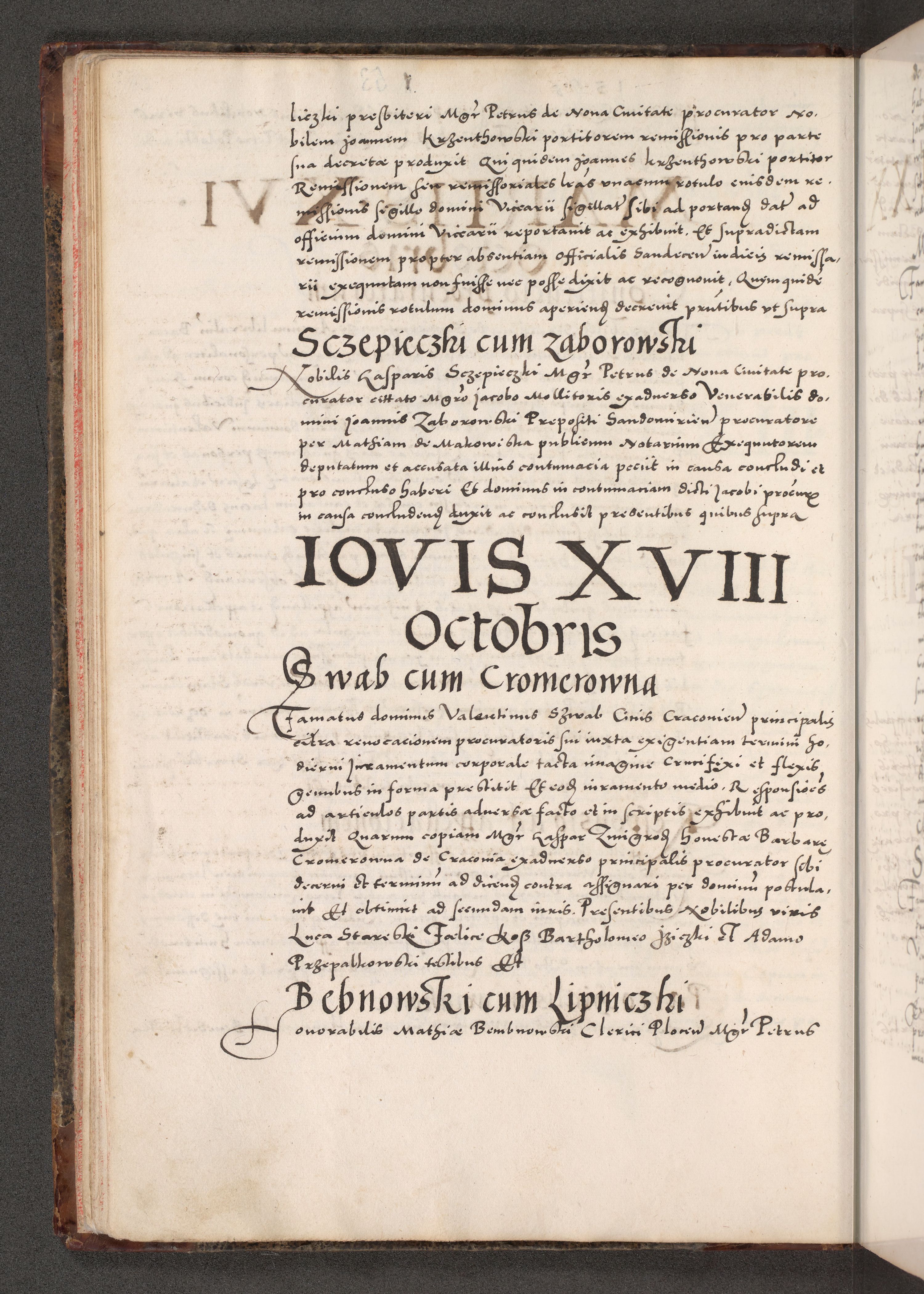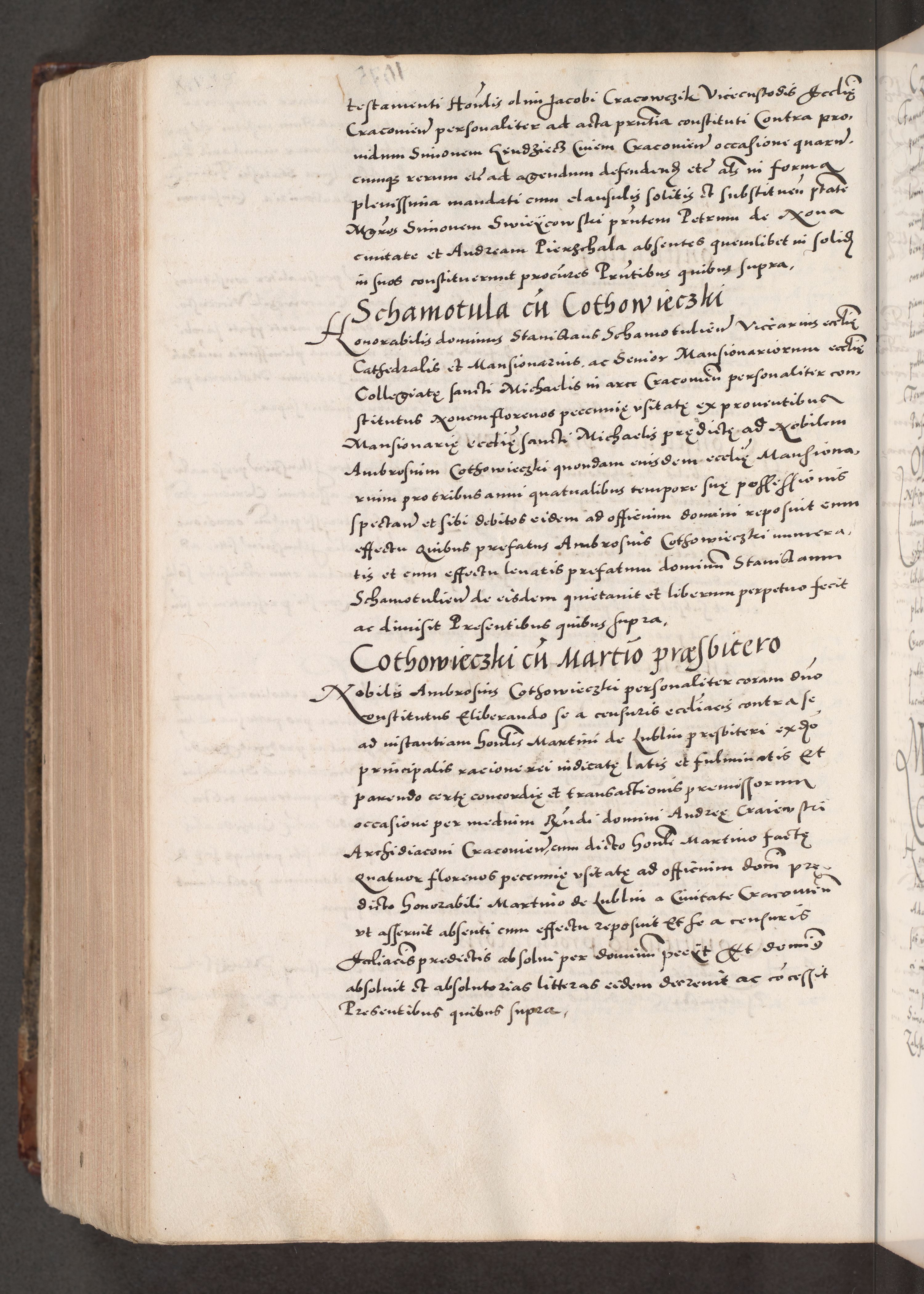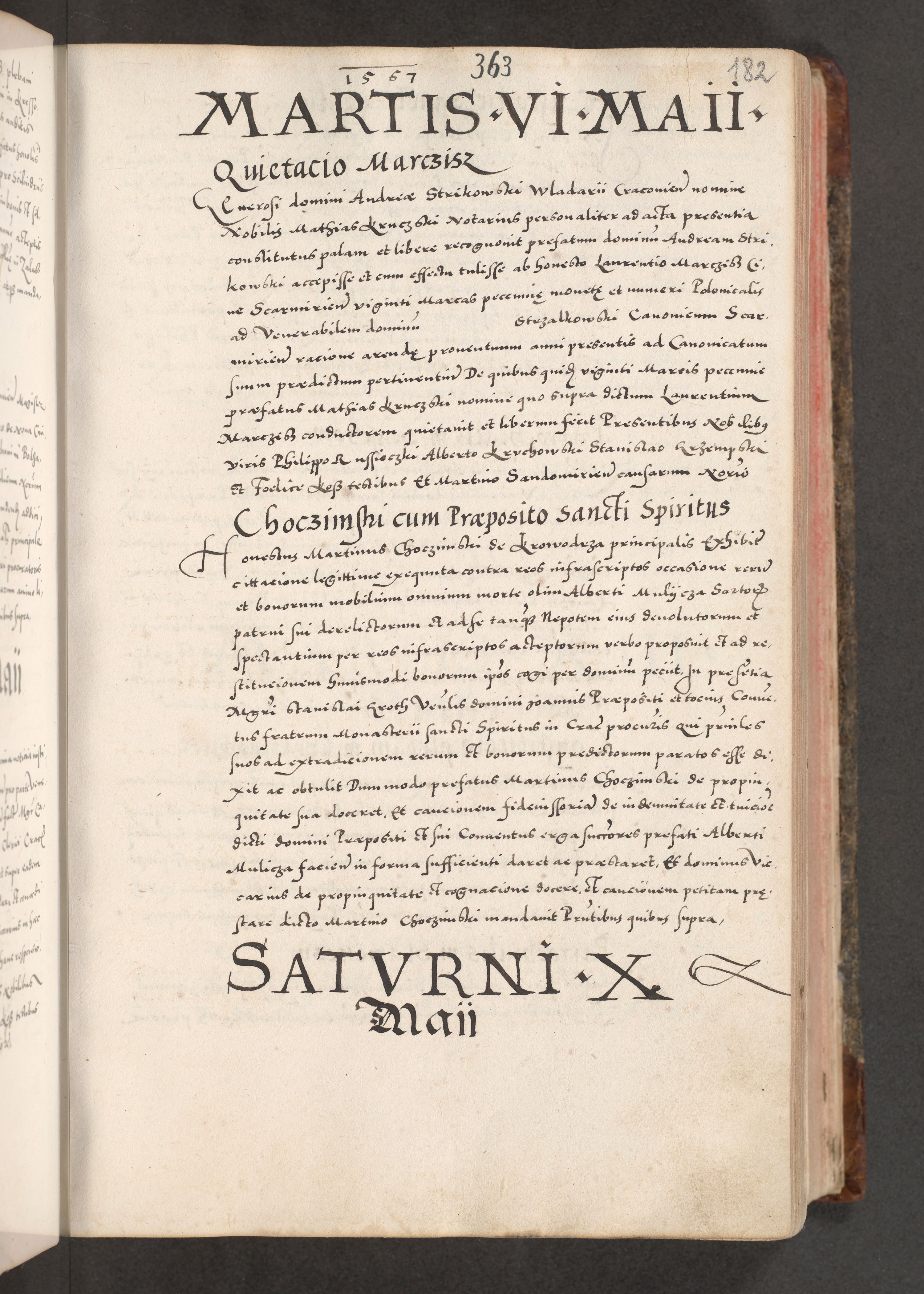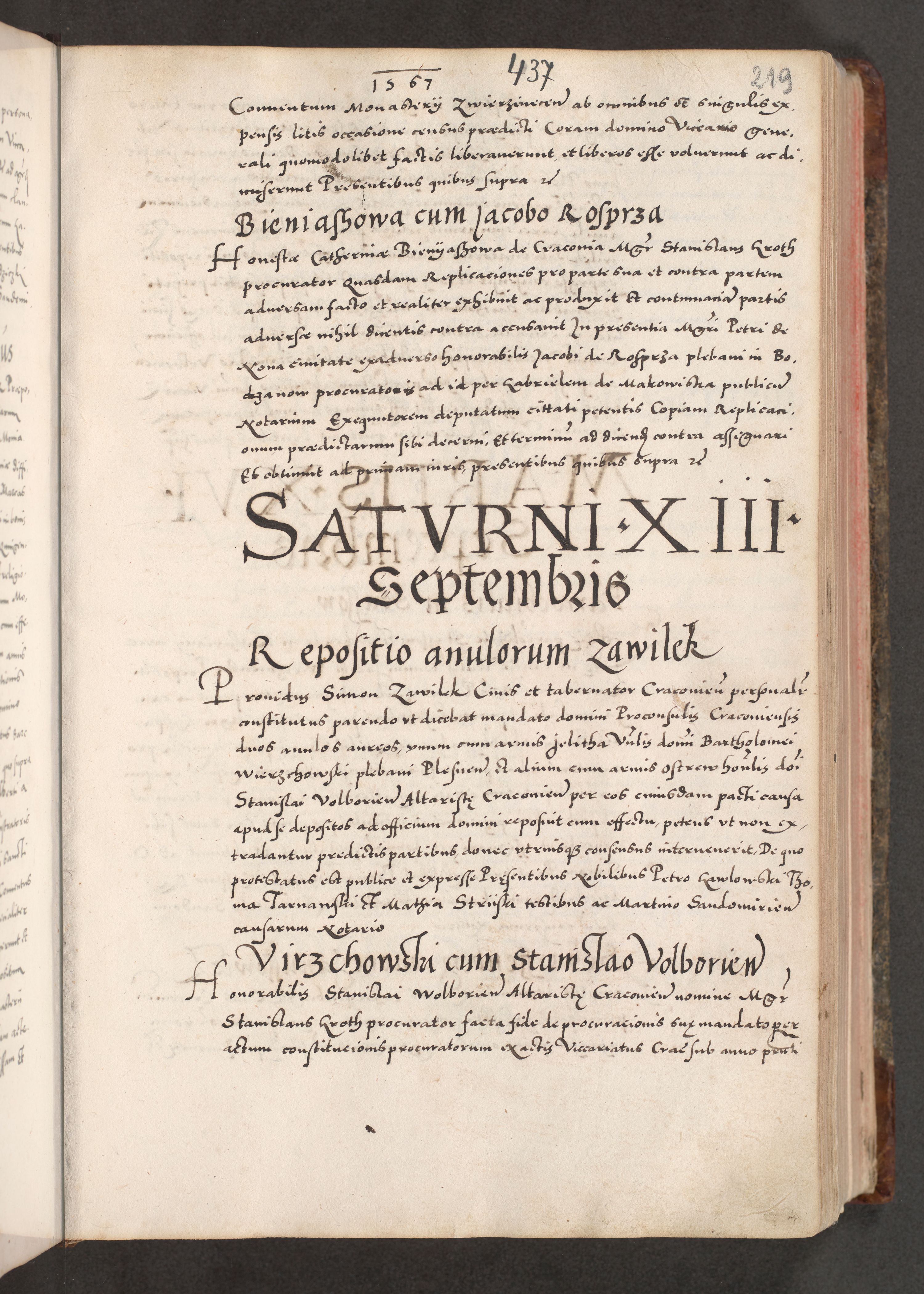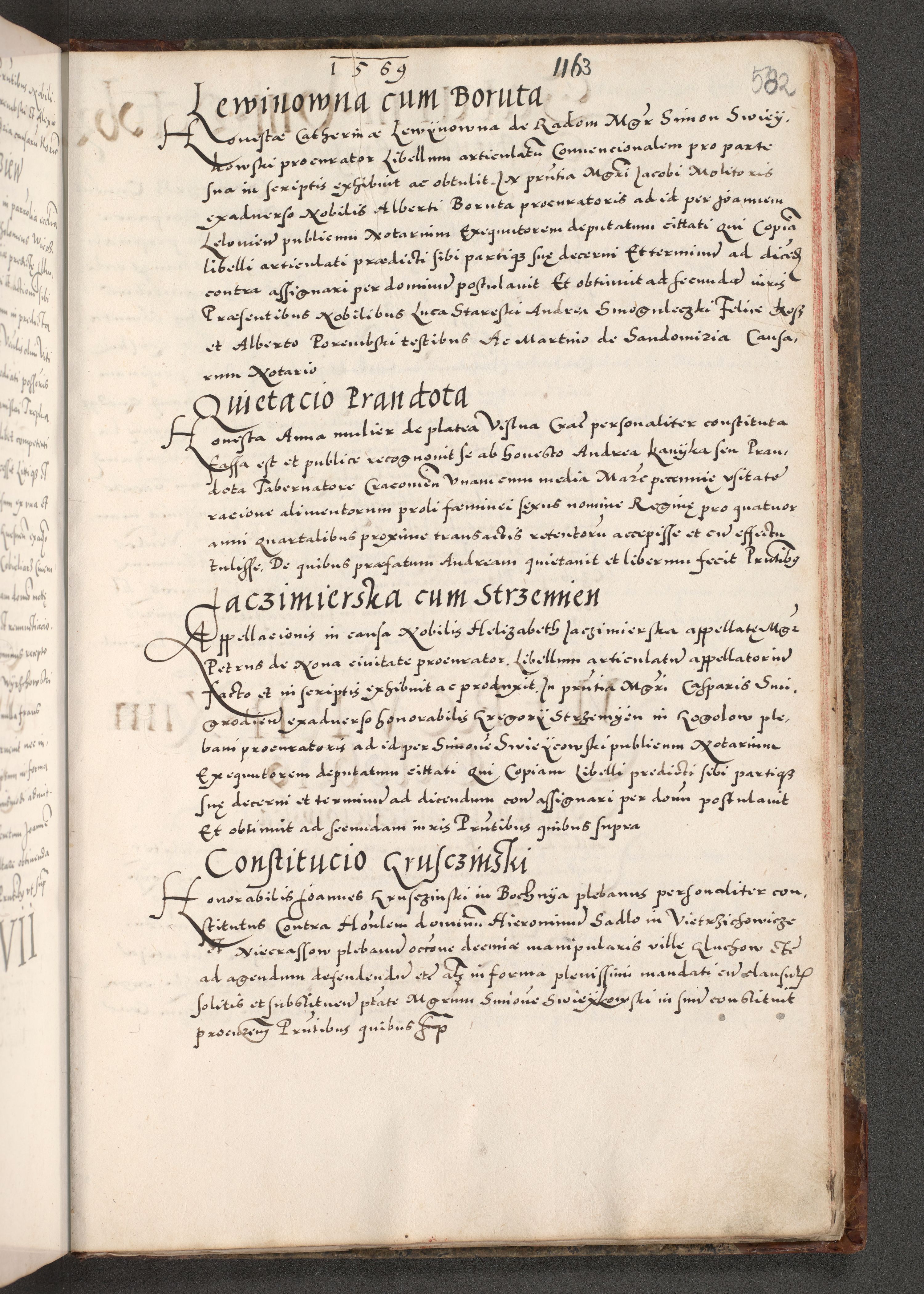 Acta actorum causarum, sententiarum tam diffinitivarum quam interloquutoriarum, decretorum, obligationum, quietationum, constitutionum procuratorum etc. coram reverendo domino Martino Izdbienski de Russiecz archidiacono Posnaniensi, custode et in spiritualibus vicario generali Cracoviensi, ad annum Domini millesimum quingesimum sexagesimum quintum, cuius indictio octava, pontificatus Pii pape, annus sextus, continuantur
