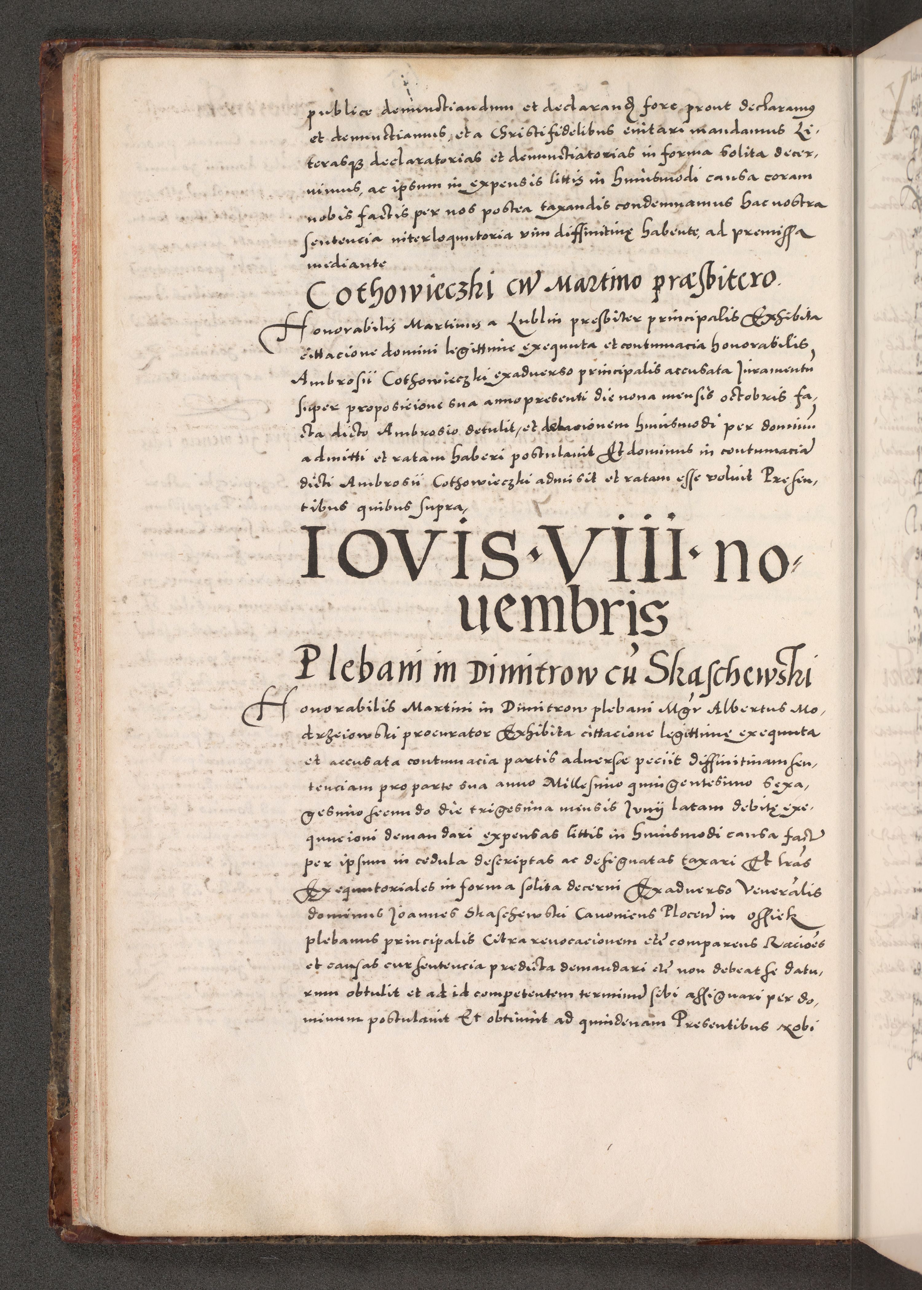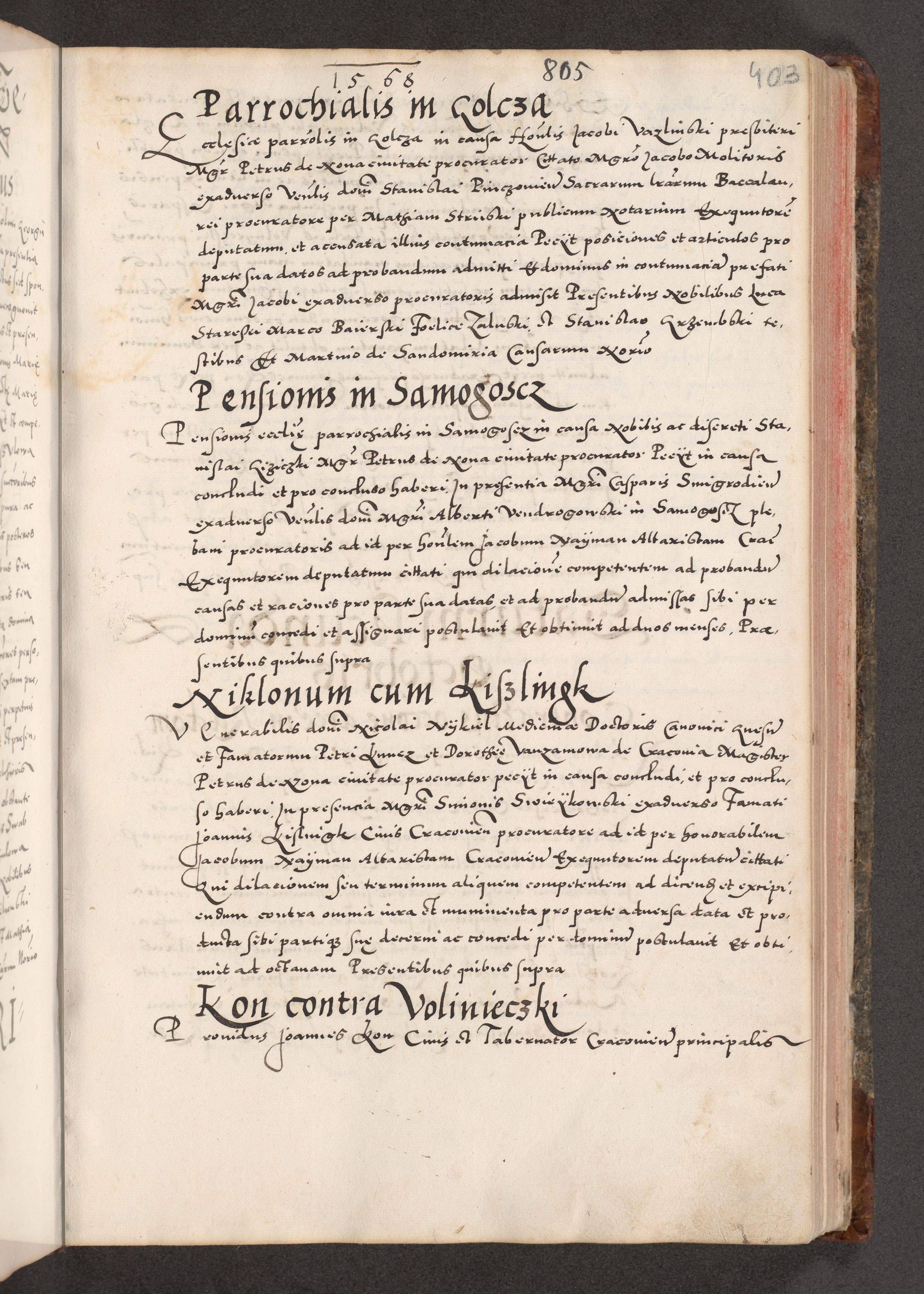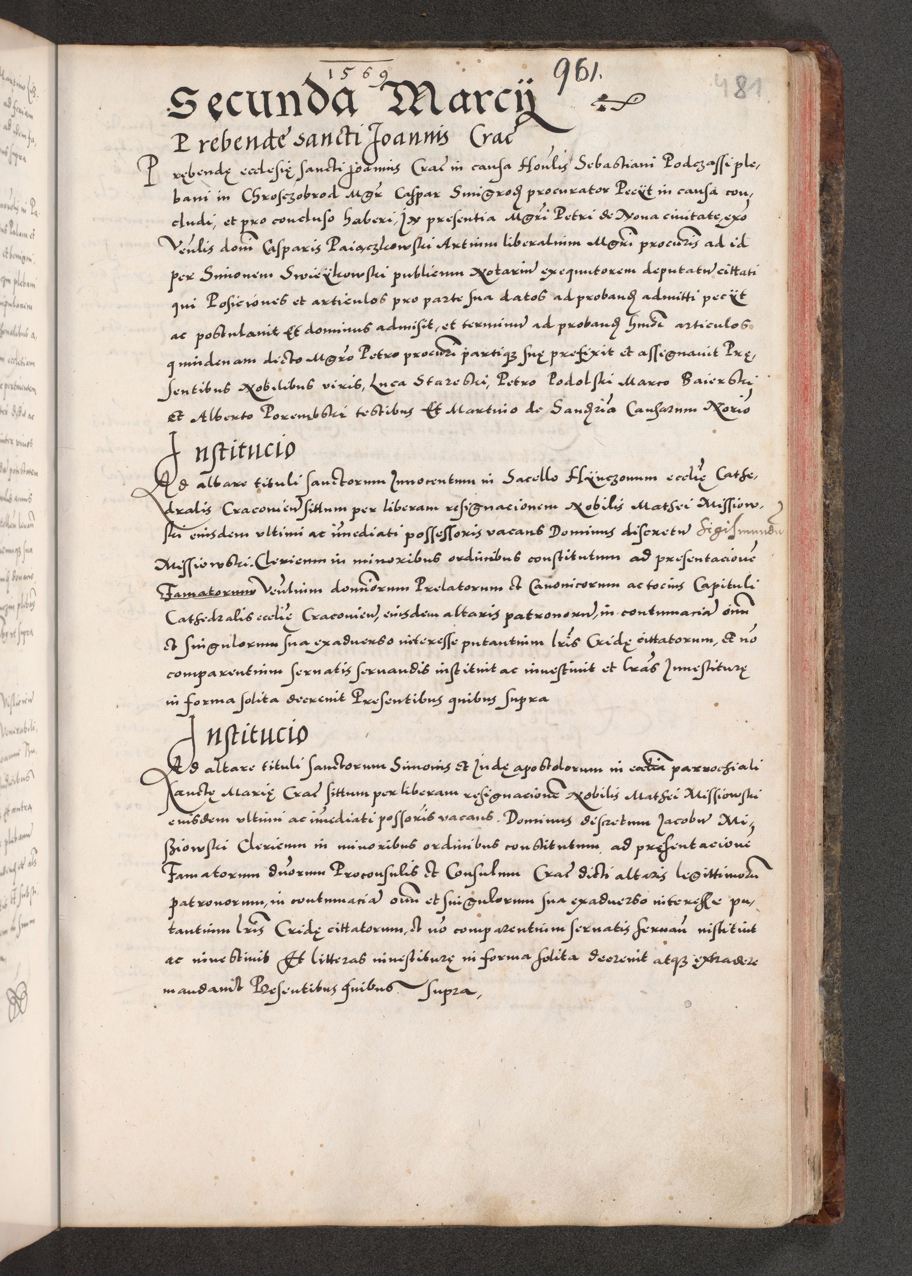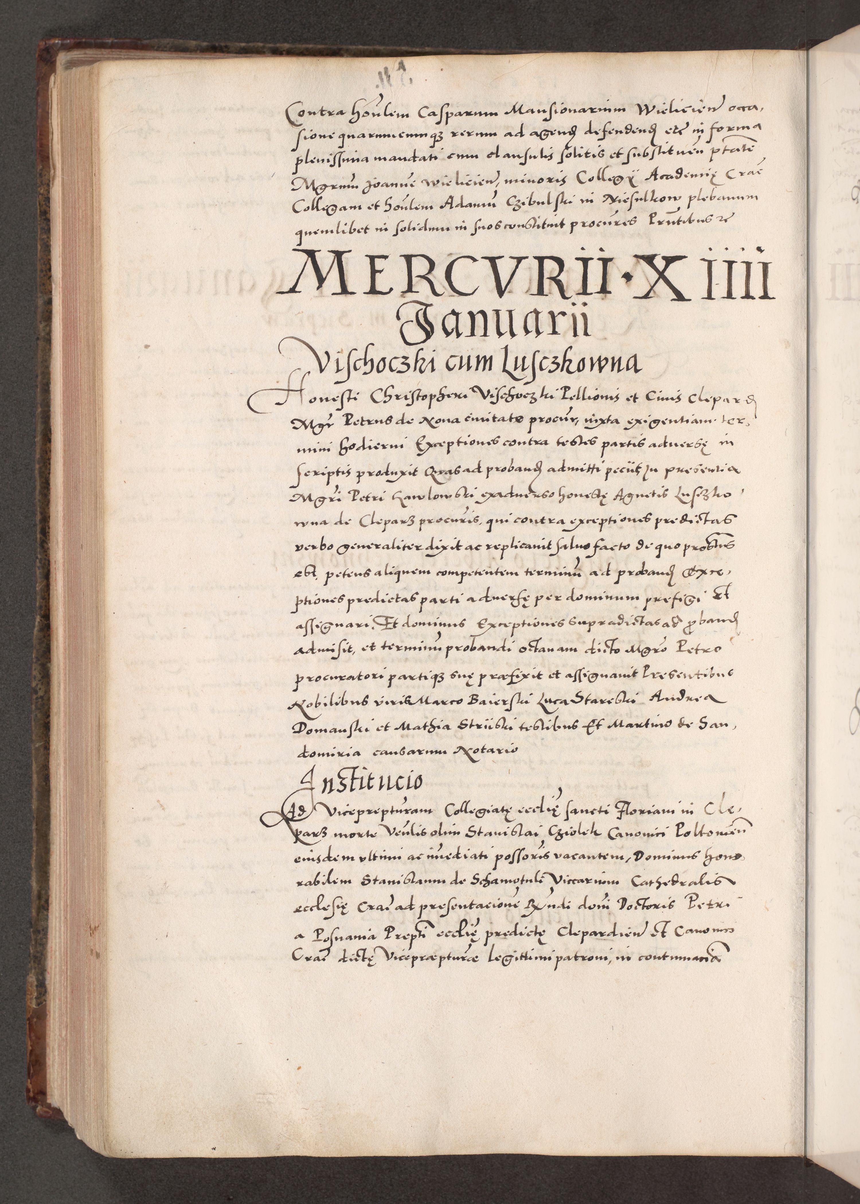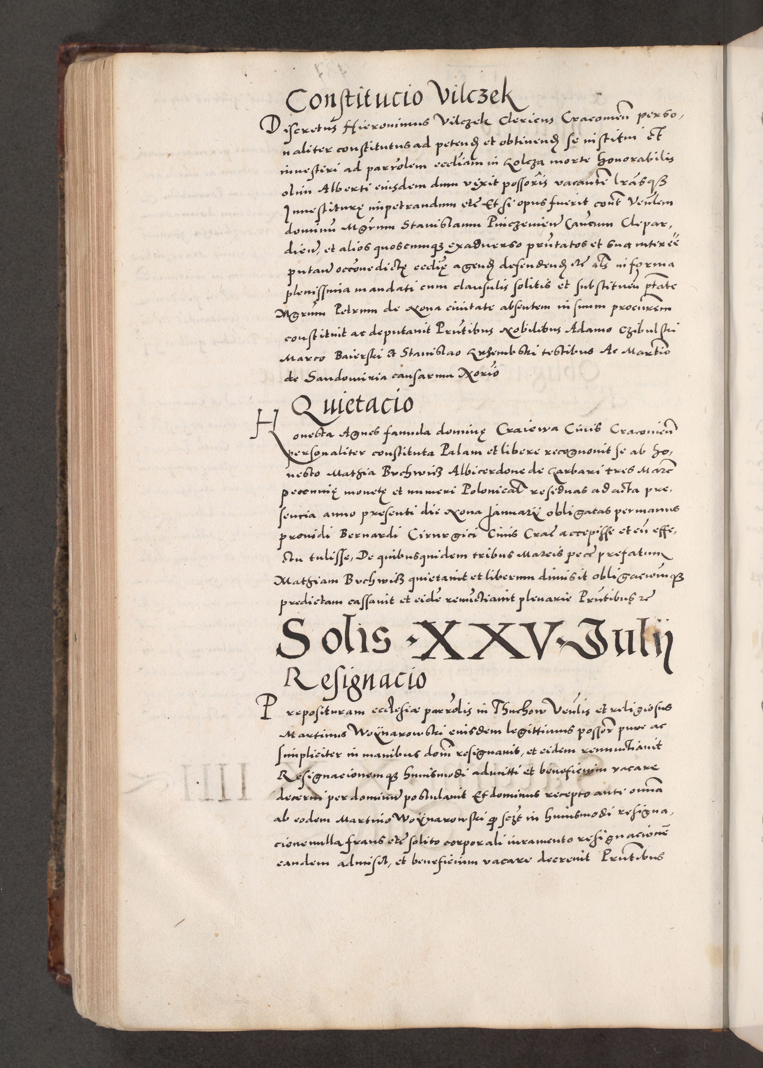 Acta actorum causarum, sententiarum tam diffinitivarum quam interloquutoriarum, decretorum, obligationum, quietationum, constitutionum procuratorum etc. coram reverendo domino Martino Izdbienski de Russiecz archidiacono Posnaniensi, custode et in spiritualibus vicario generali Cracoviensi, ad annum Domini millesimum quingesimum sexagesimum quintum, cuius indictio octava, pontificatus Pii pape, annus sextus, continuantur