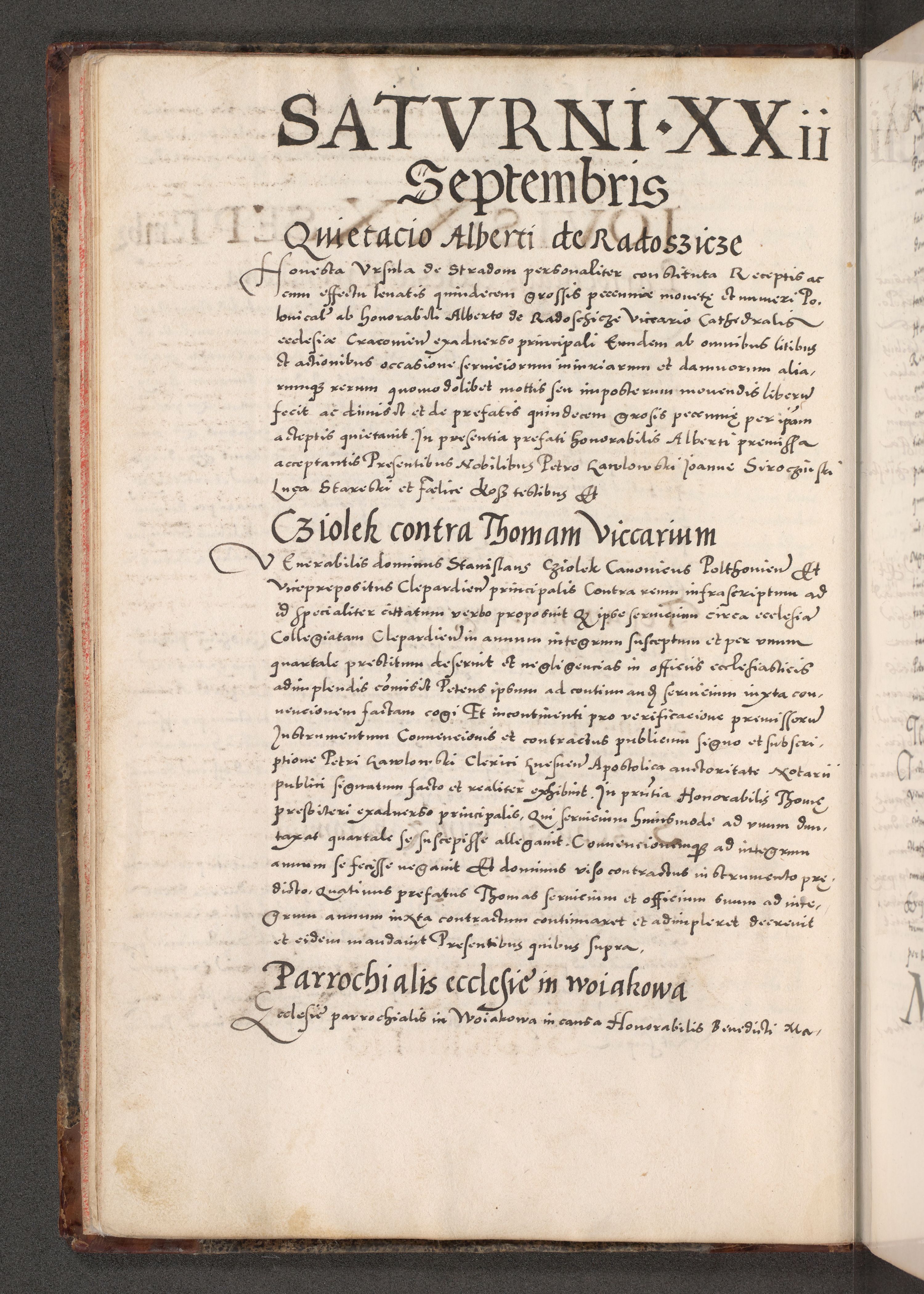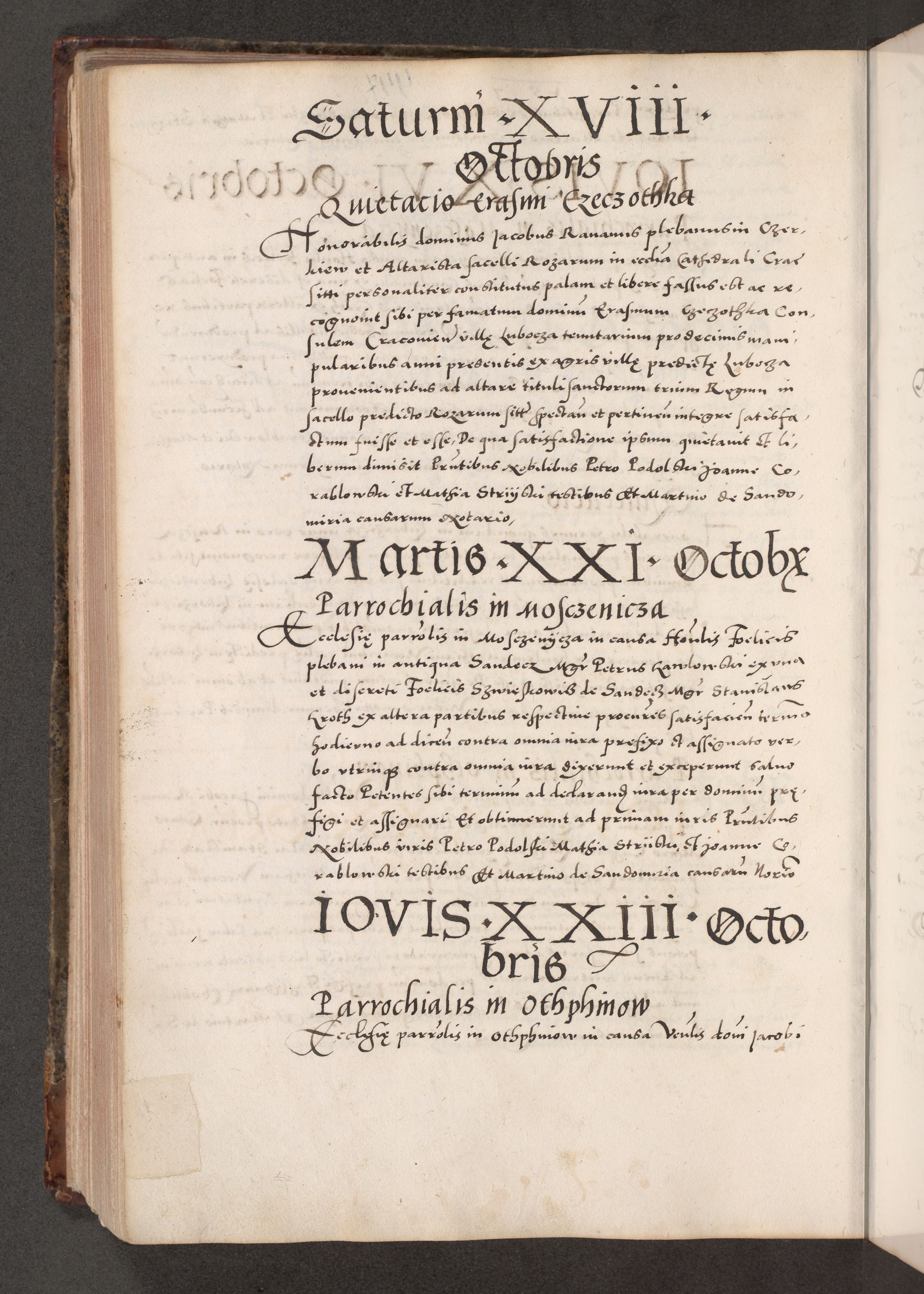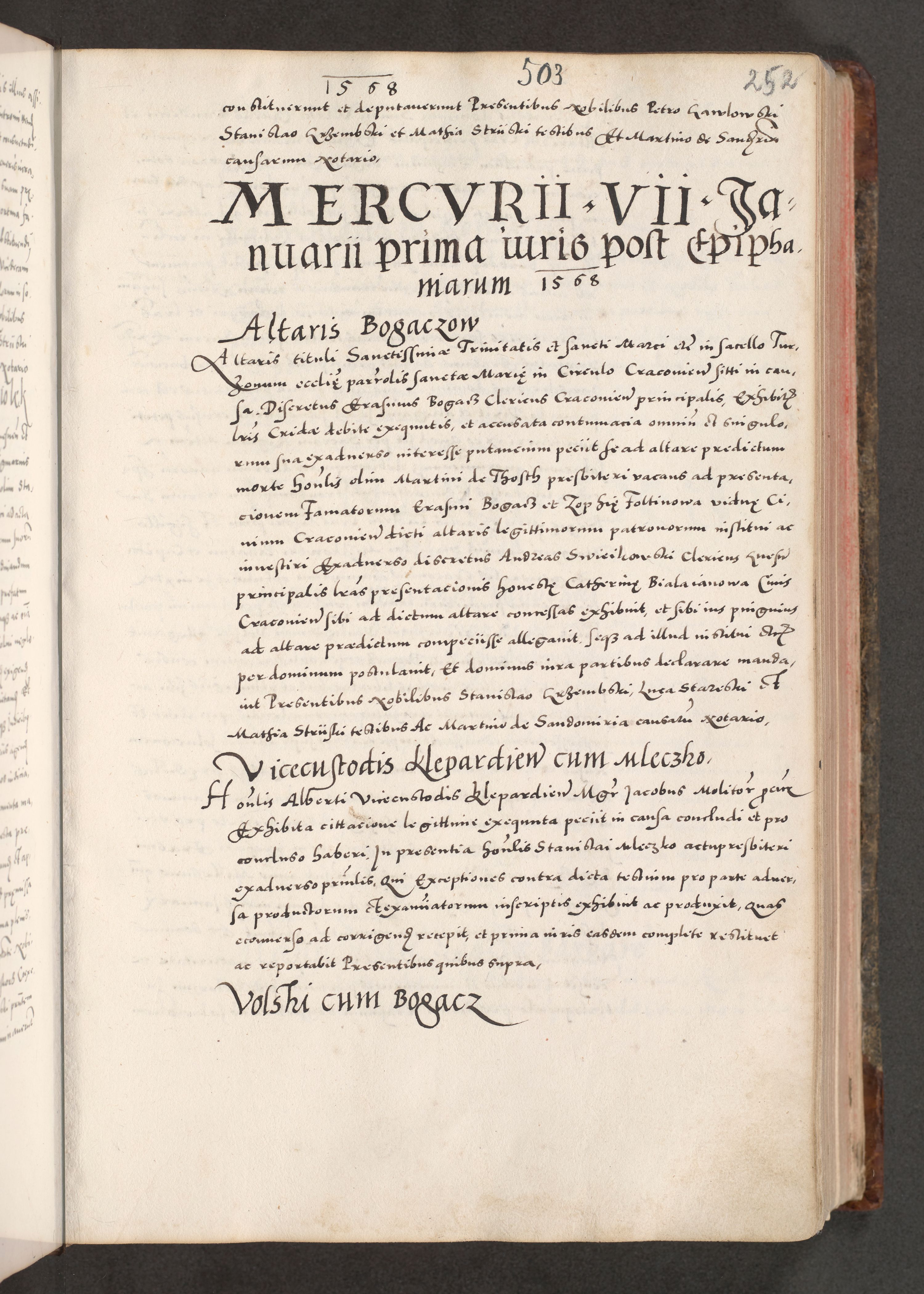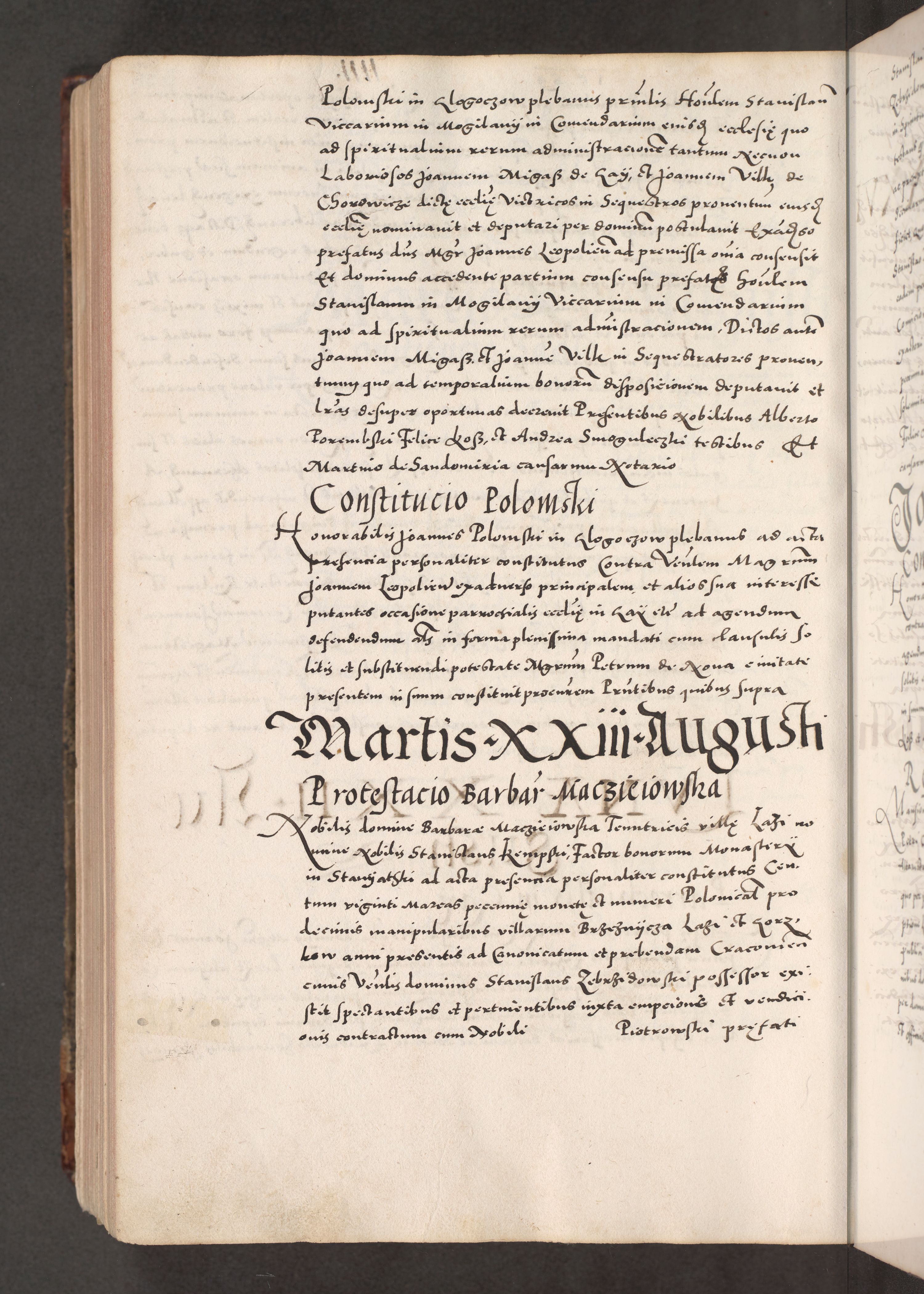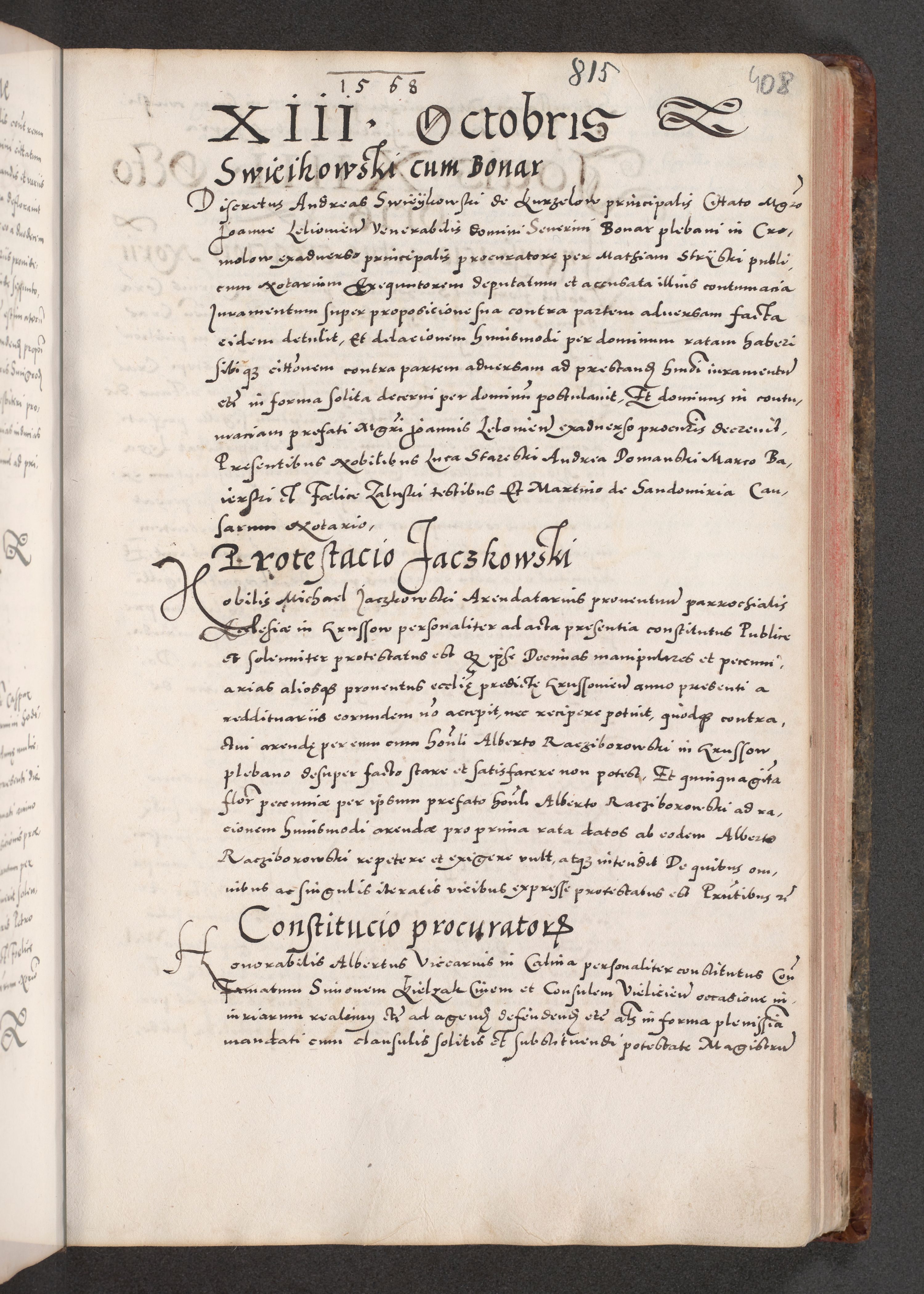 Acta actorum causarum, sententiarum tam diffinitivarum quam interloquutoriarum, decretorum, obligationum, quietationum, constitutionum procuratorum etc. coram reverendo domino Martino Izdbienski de Russiecz archidiacono Posnaniensi, custode et in spiritualibus vicario generali Cracoviensi, ad annum Domini millesimum quingesimum sexagesimum quintum, cuius indictio octava, pontificatus Pii pape, annus sextus, continuantur