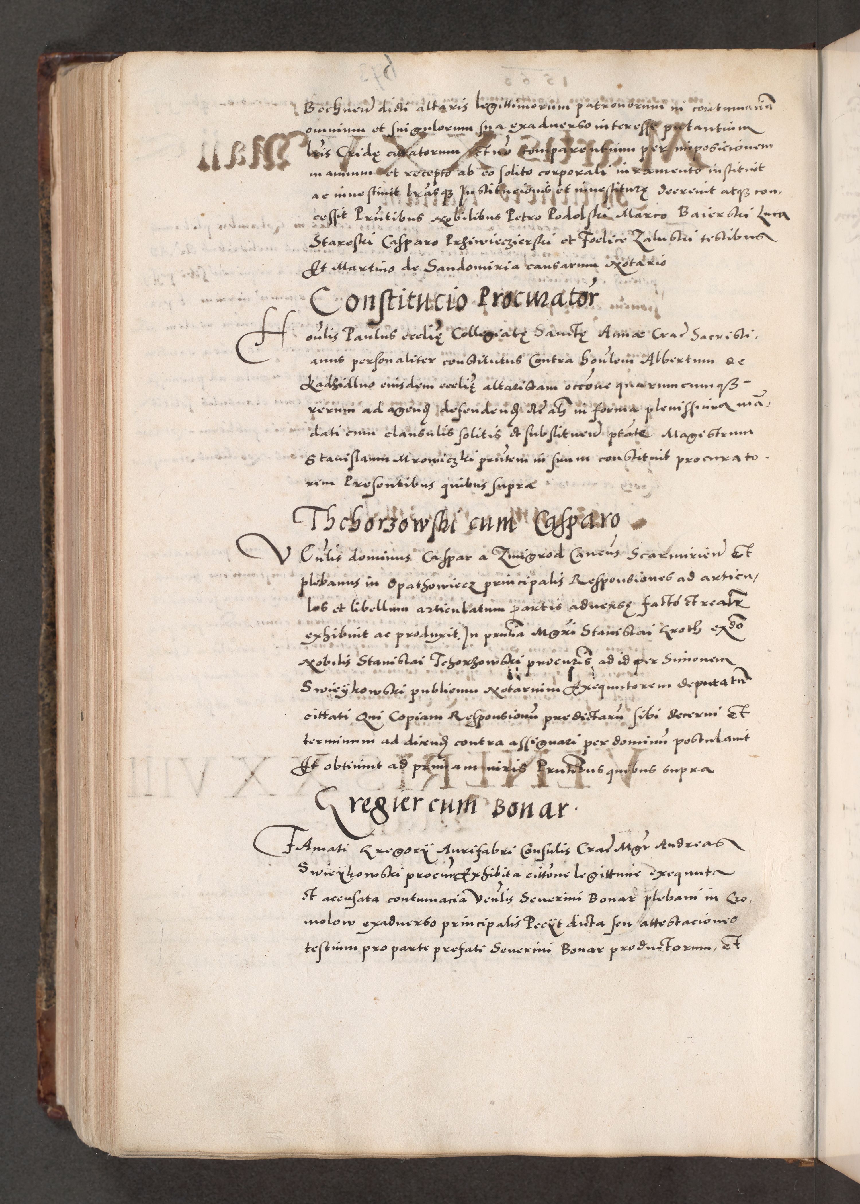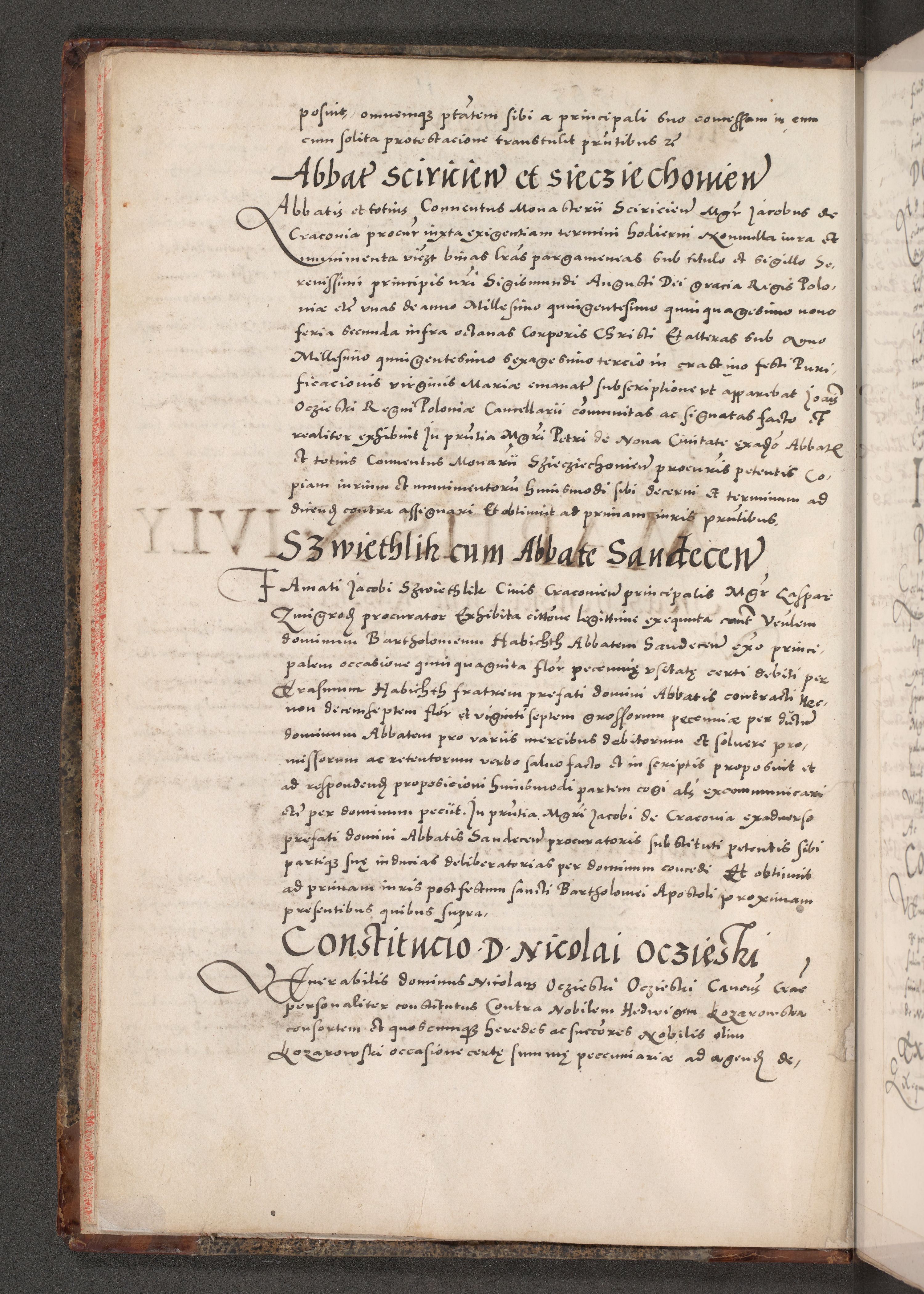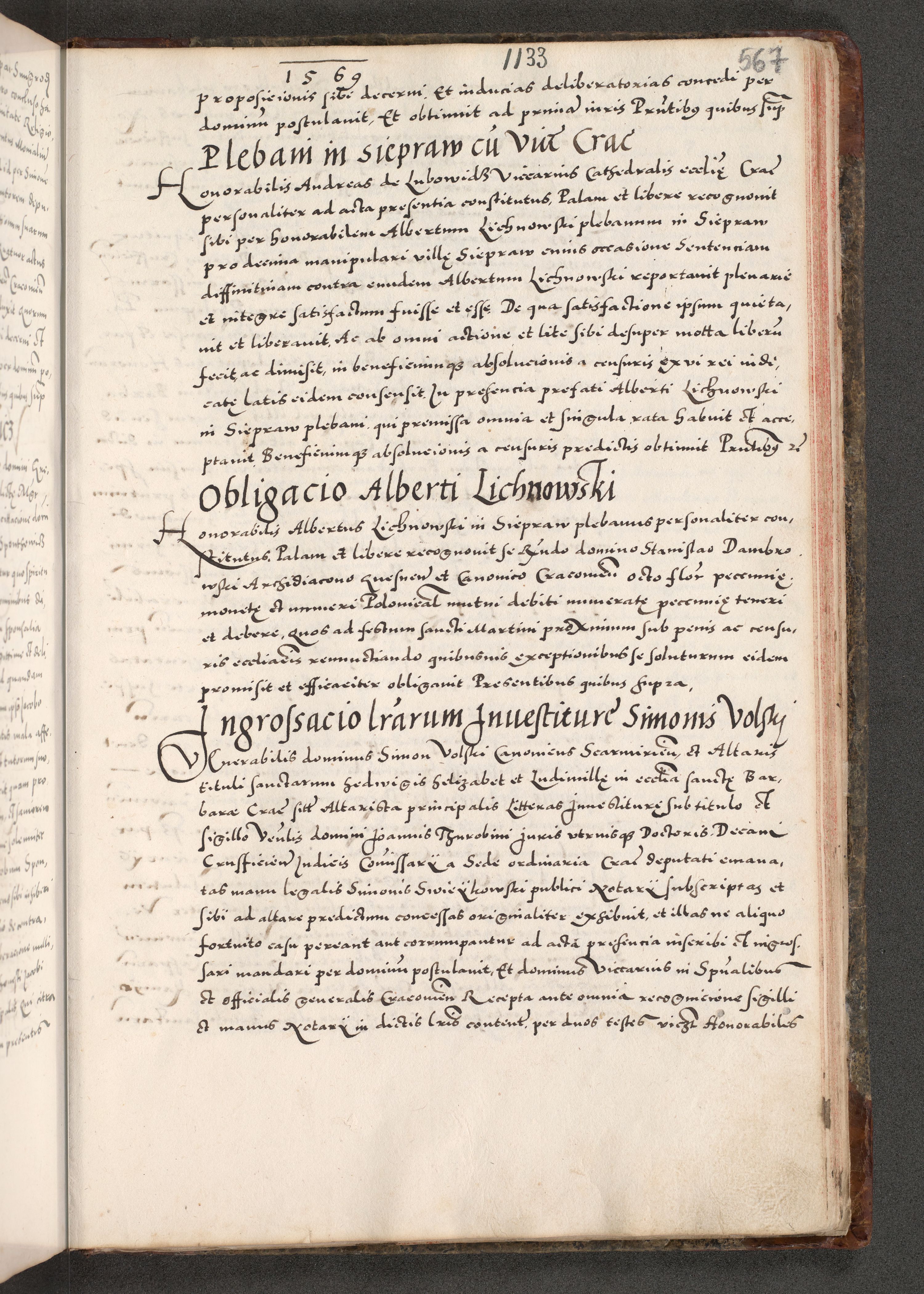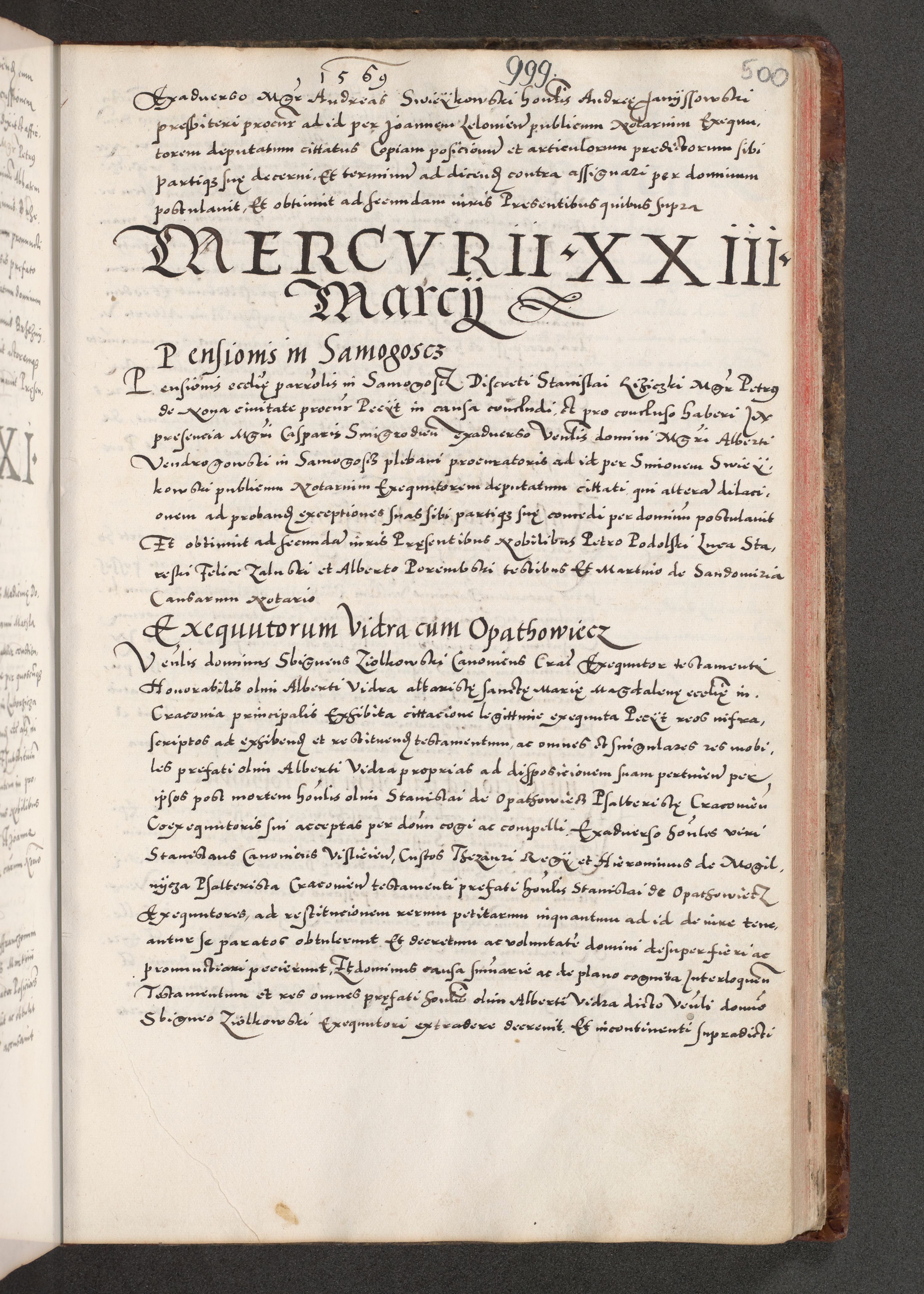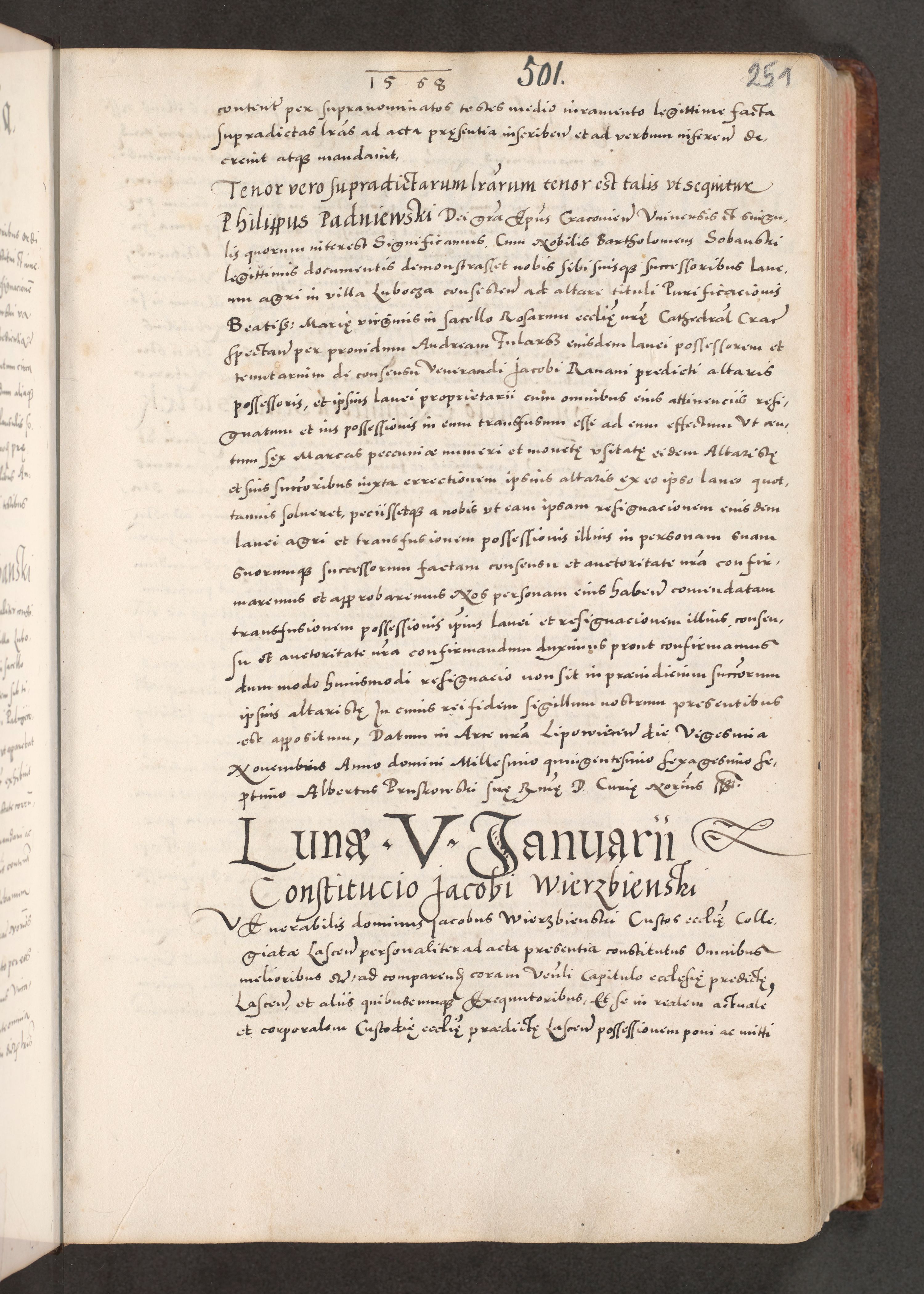 Acta actorum causarum, sententiarum tam diffinitivarum quam interloquutoriarum, decretorum, obligationum, quietationum, constitutionum procuratorum etc. coram reverendo domino Martino Izdbienski de Russiecz archidiacono Posnaniensi, custode et in spiritualibus vicario generali Cracoviensi, ad annum Domini millesimum quingesimum sexagesimum quintum, cuius indictio octava, pontificatus Pii pape, annus sextus, continuantur