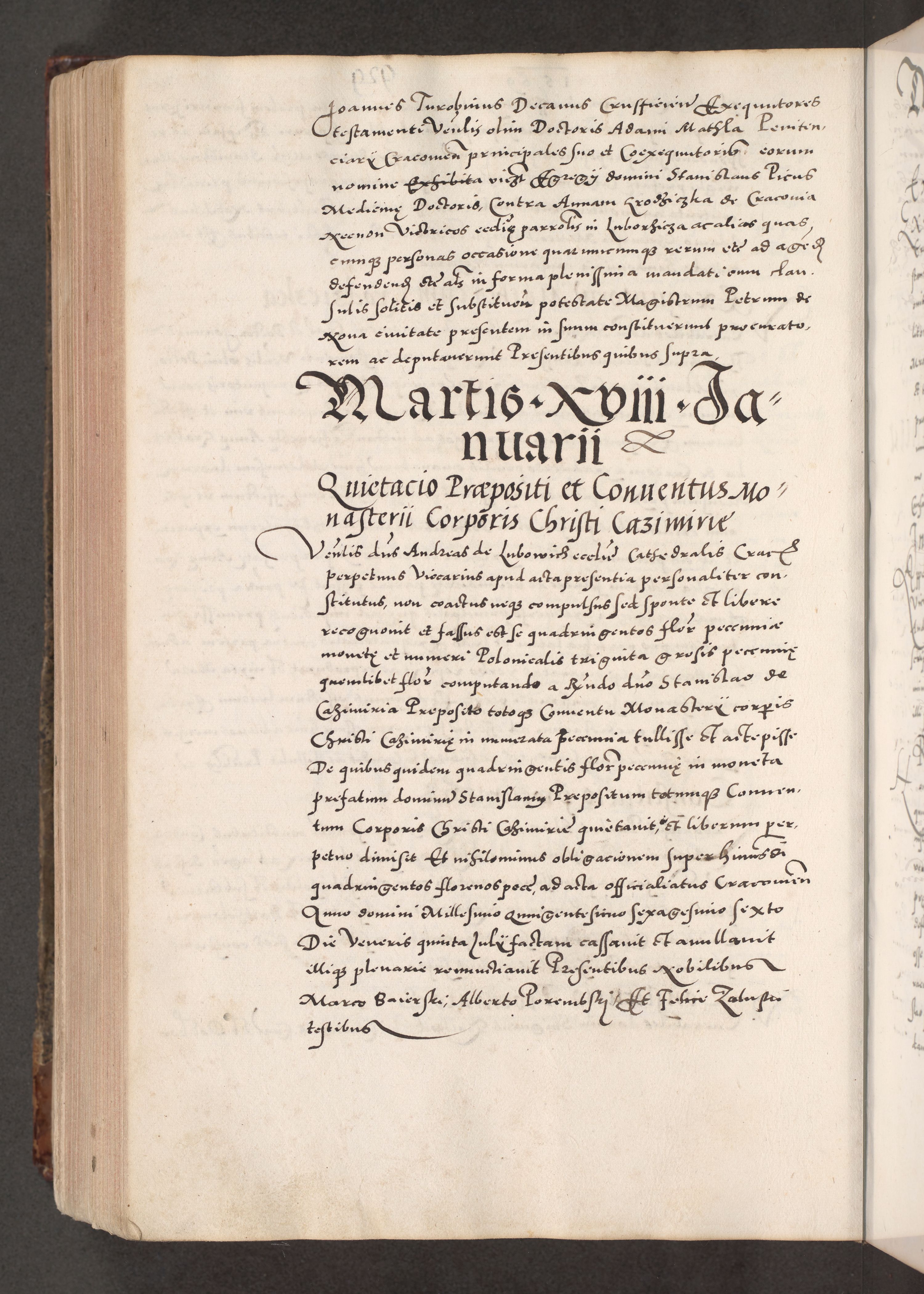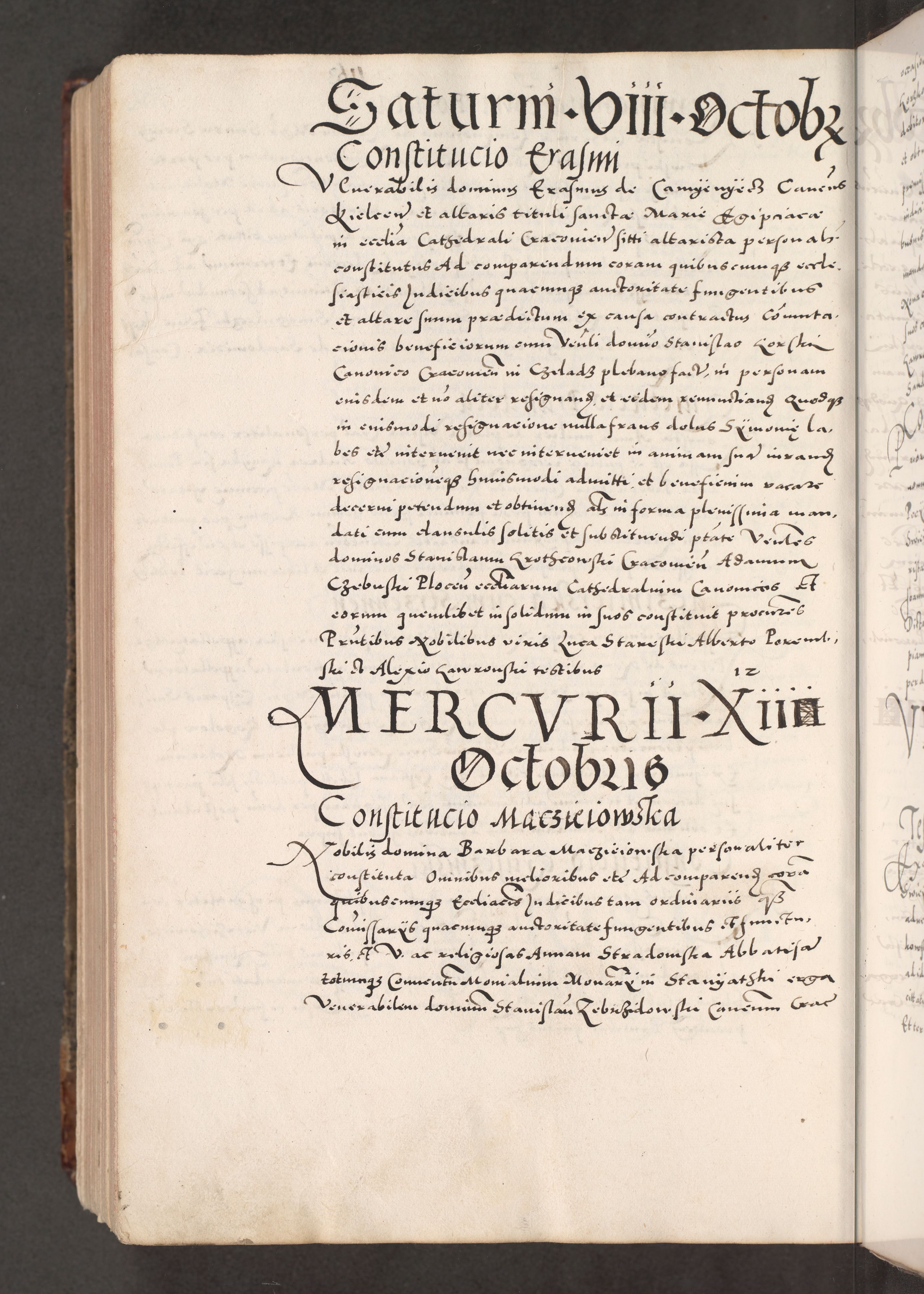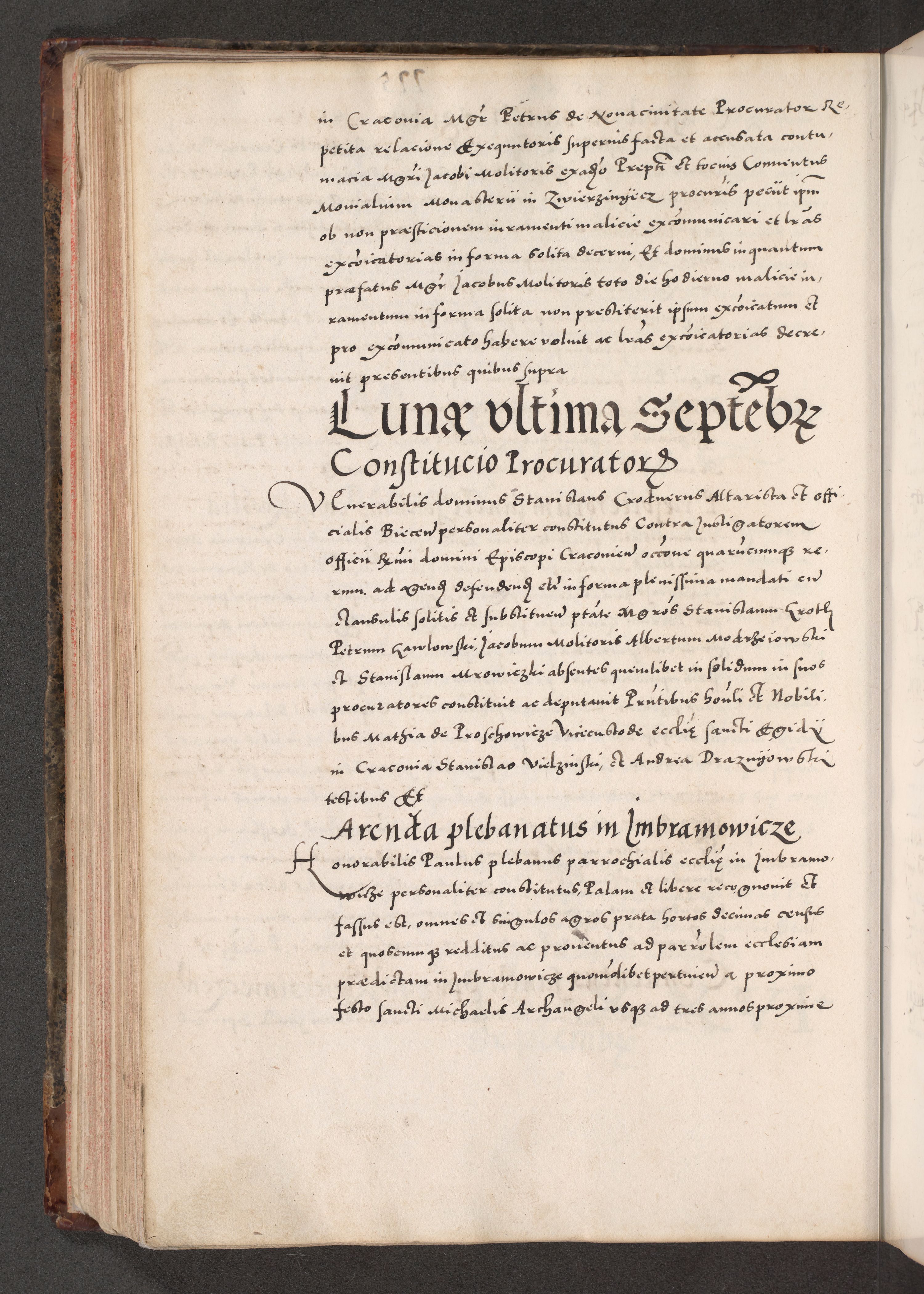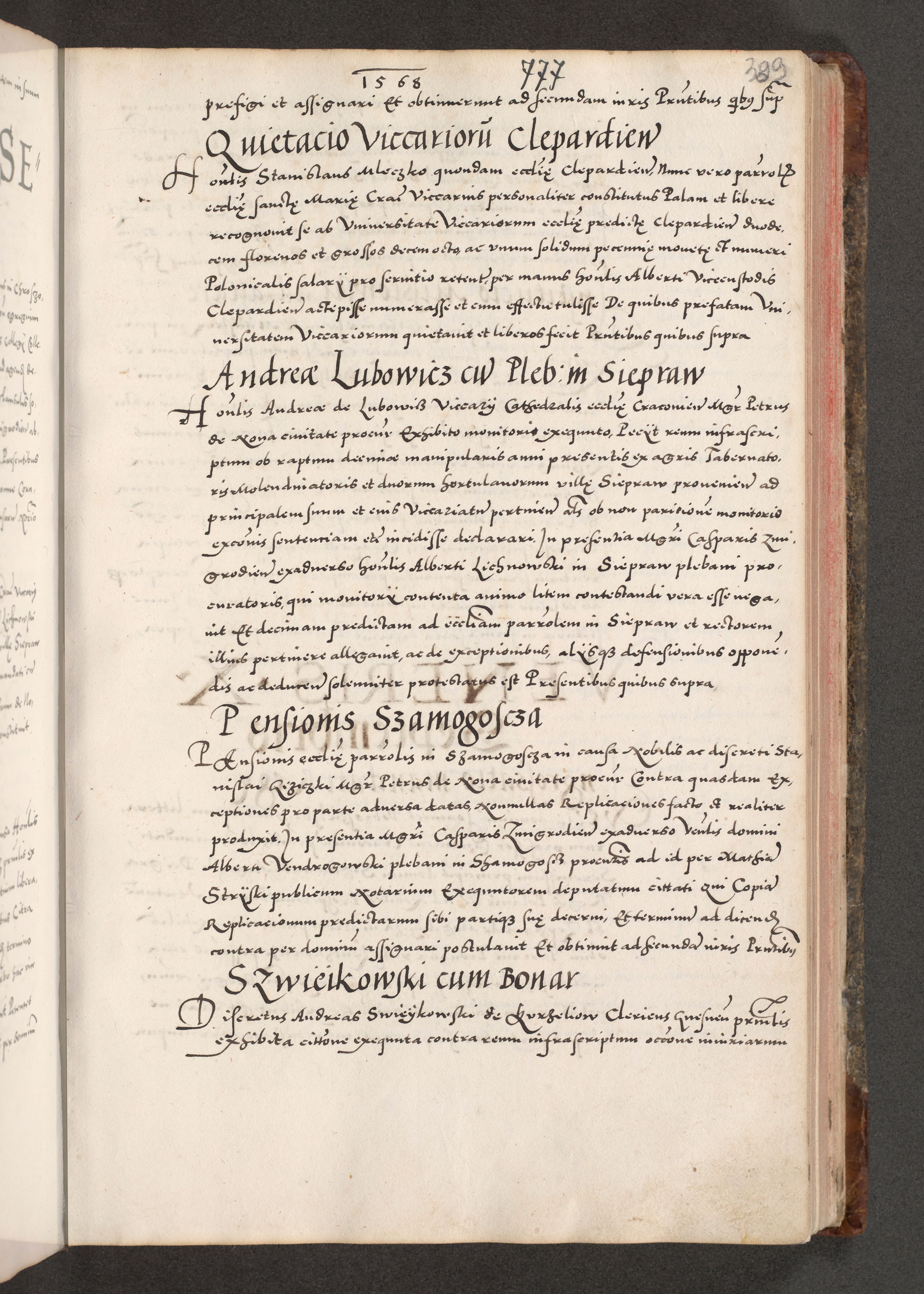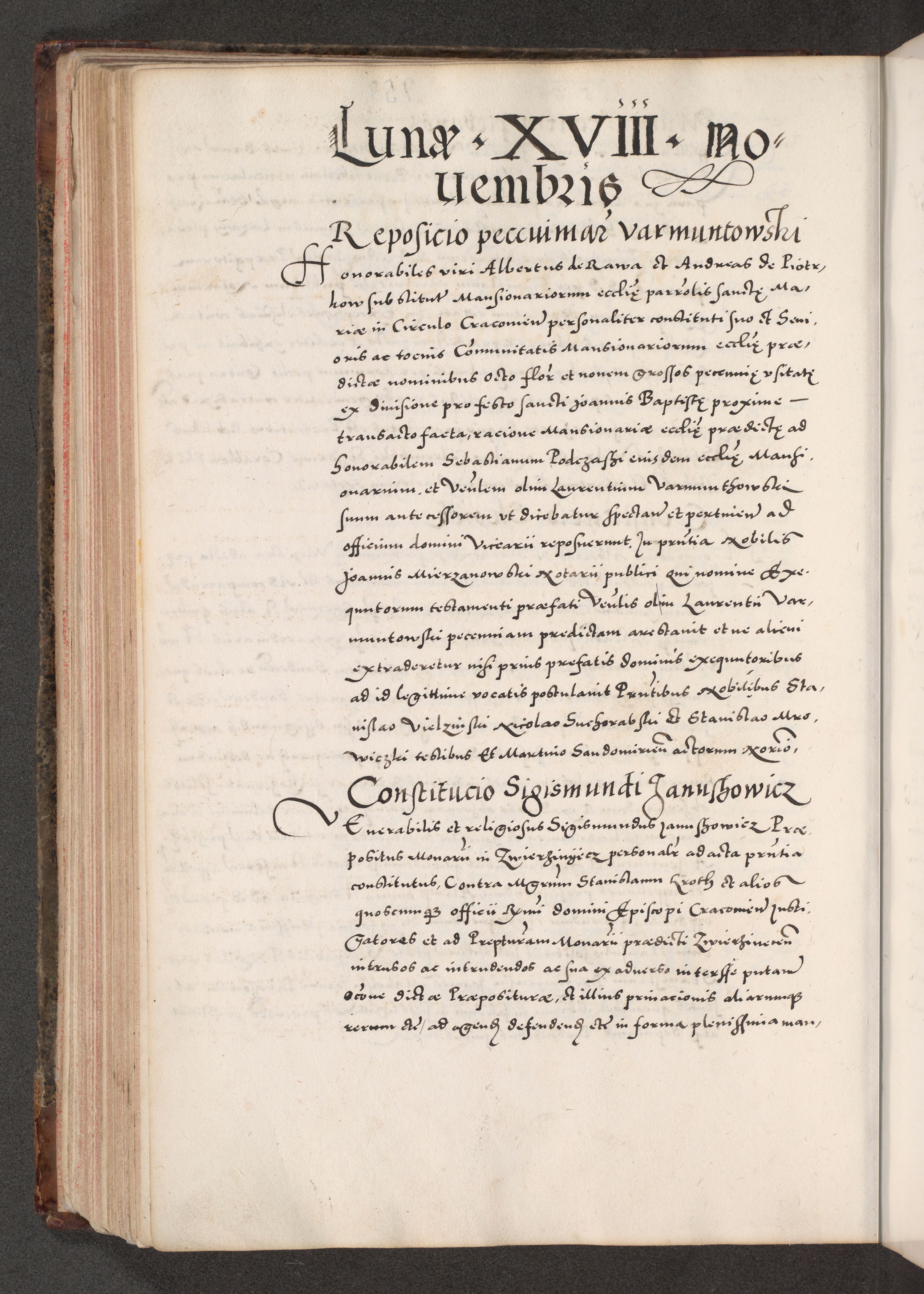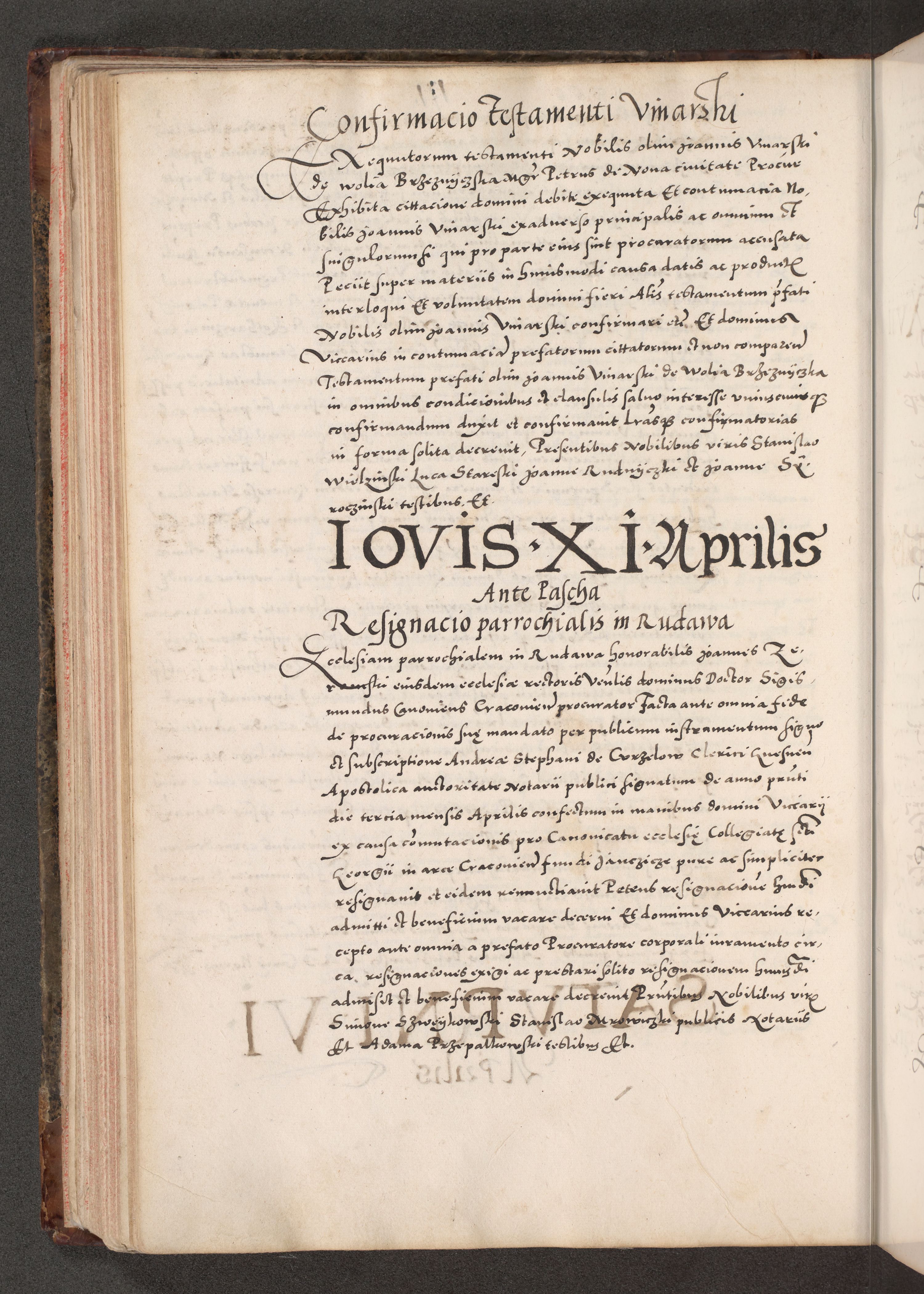 Acta actorum causarum, sententiarum tam diffinitivarum quam interloquutoriarum, decretorum, obligationum, quietationum, constitutionum procuratorum etc. coram reverendo domino Martino Izdbienski de Russiecz archidiacono Posnaniensi, custode et in spiritualibus vicario generali Cracoviensi, ad annum Domini millesimum quingesimum sexagesimum quintum, cuius indictio octava, pontificatus Pii pape, annus sextus, continuantur