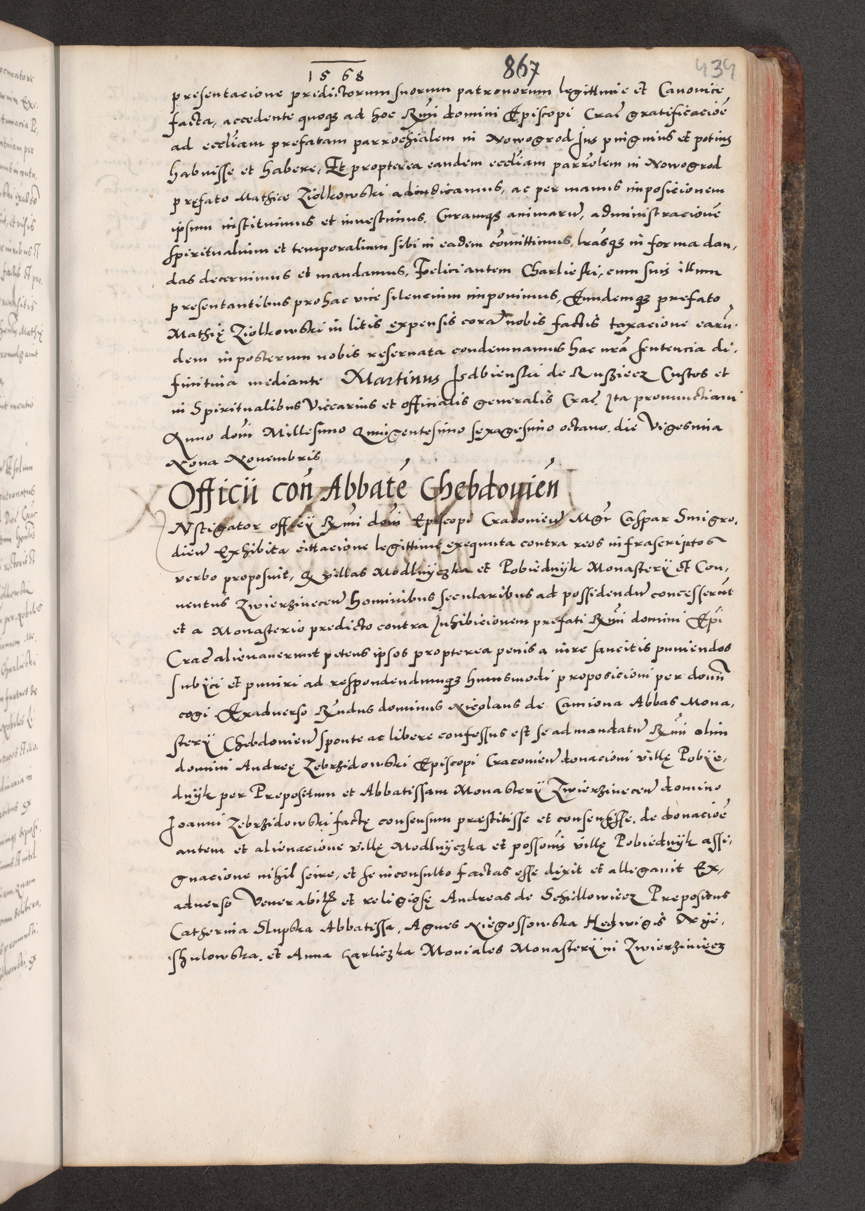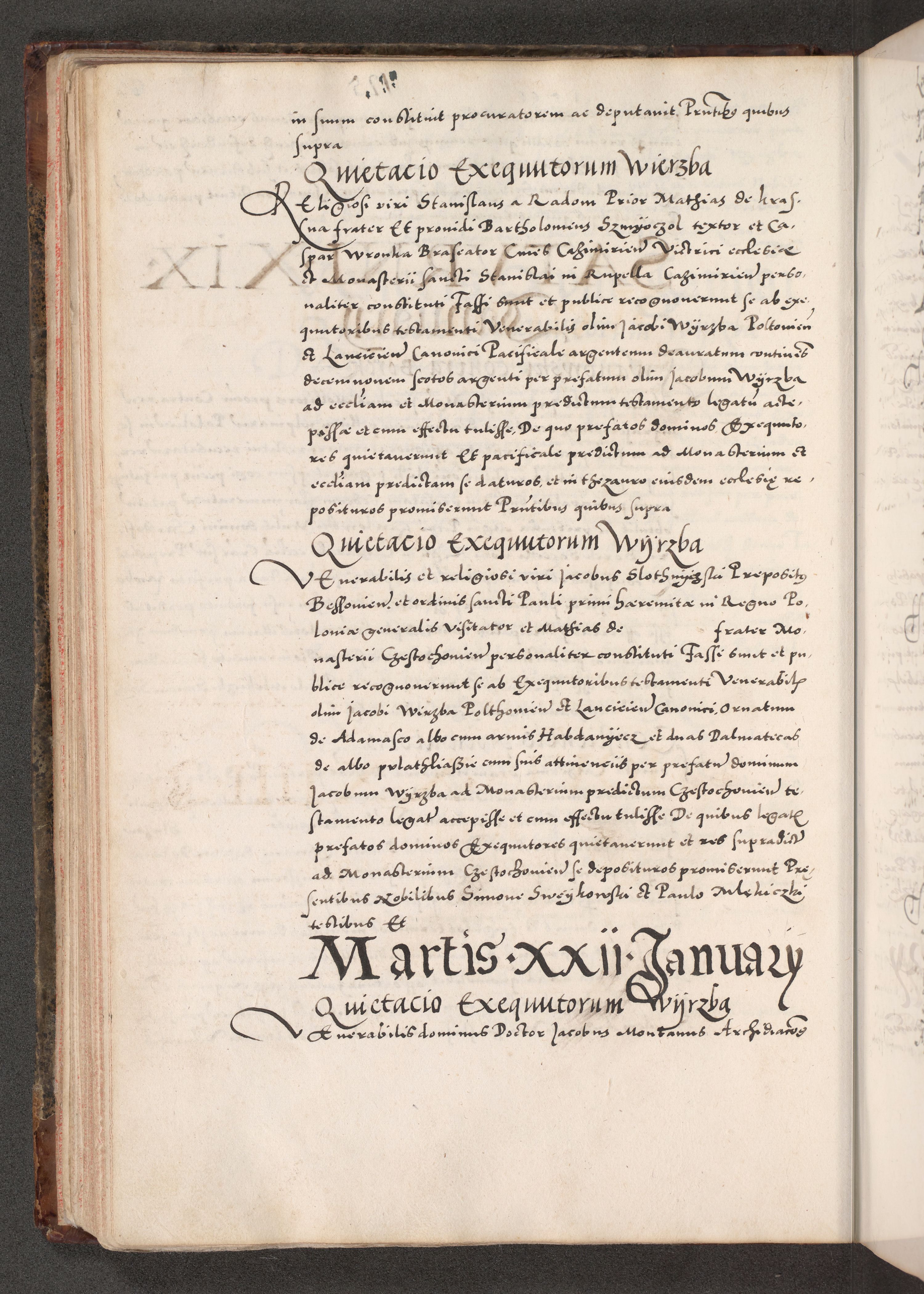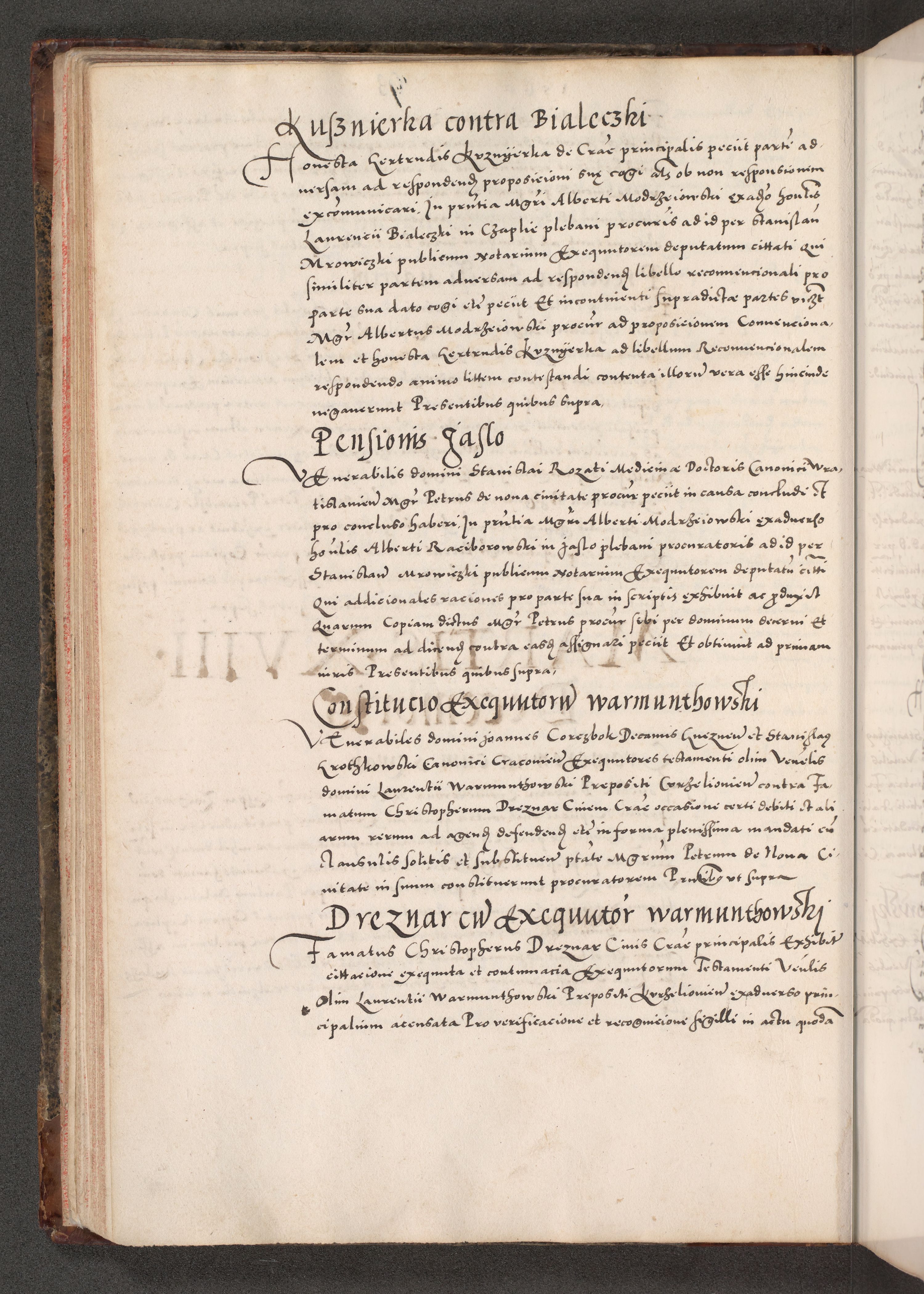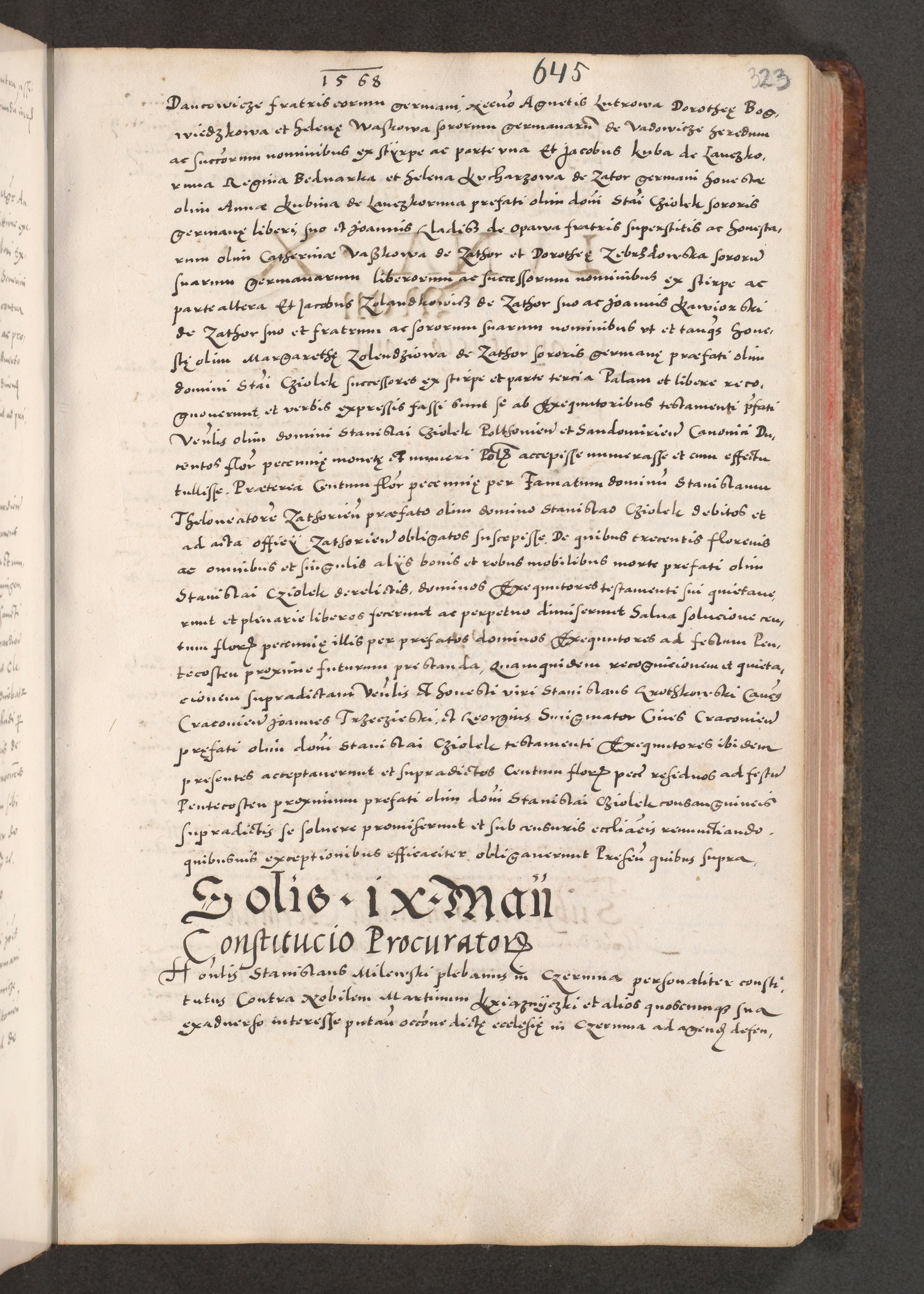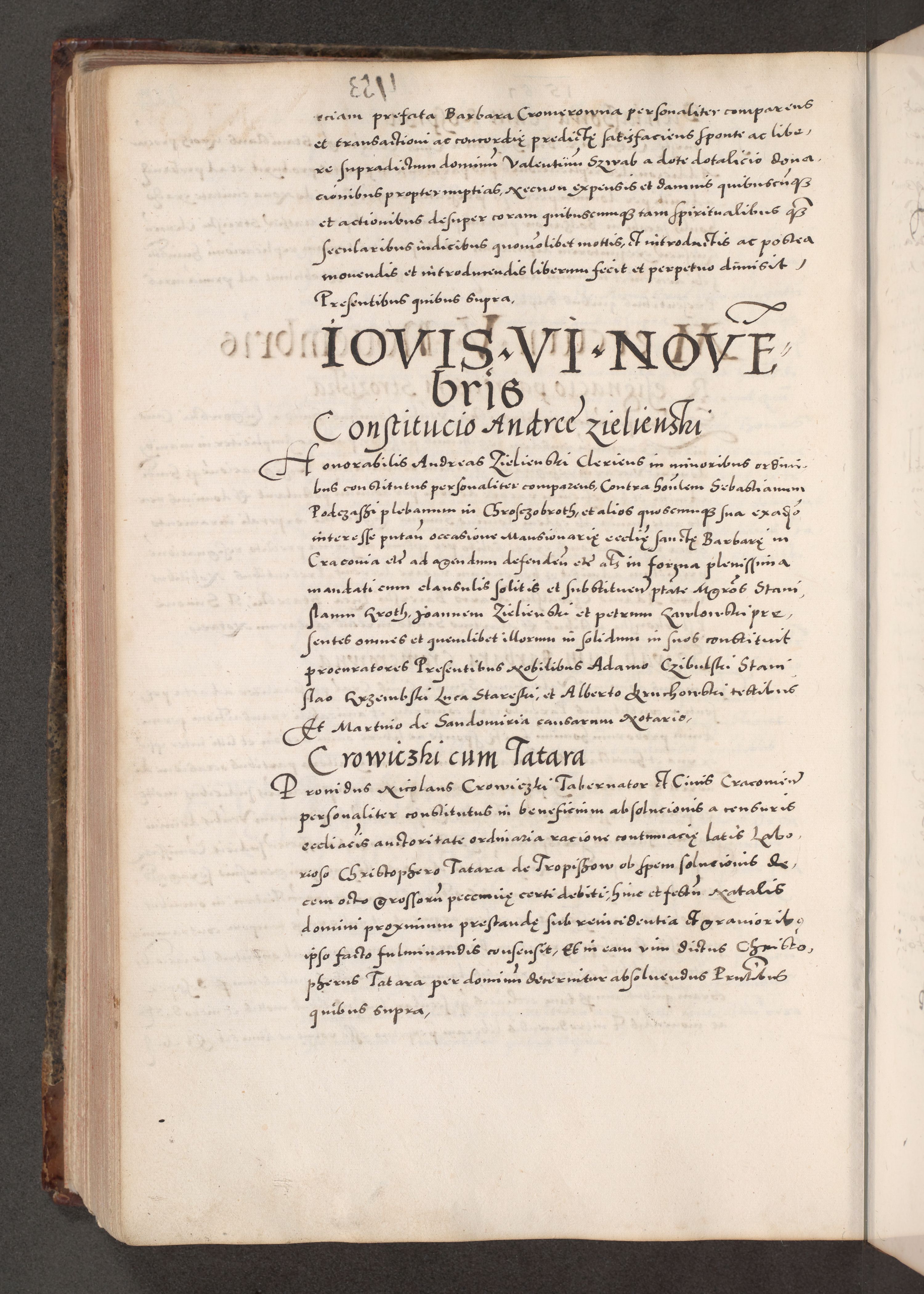 Acta actorum causarum, sententiarum tam diffinitivarum quam interloquutoriarum, decretorum, obligationum, quietationum, constitutionum procuratorum etc. coram reverendo domino Martino Izdbienski de Russiecz archidiacono Posnaniensi, custode et in spiritualibus vicario generali Cracoviensi, ad annum Domini millesimum quingesimum sexagesimum quintum, cuius indictio octava, pontificatus Pii pape, annus sextus, continuantur