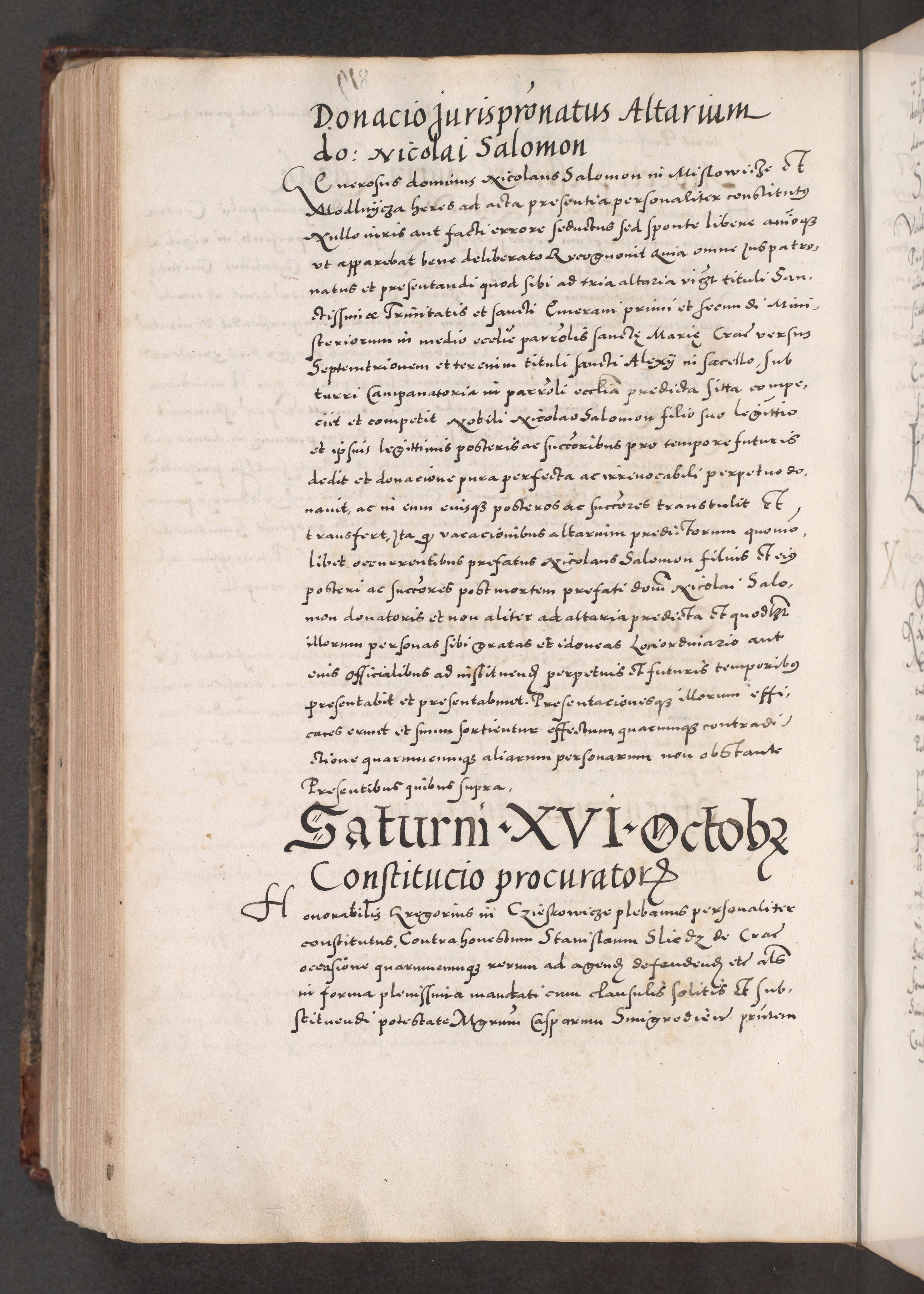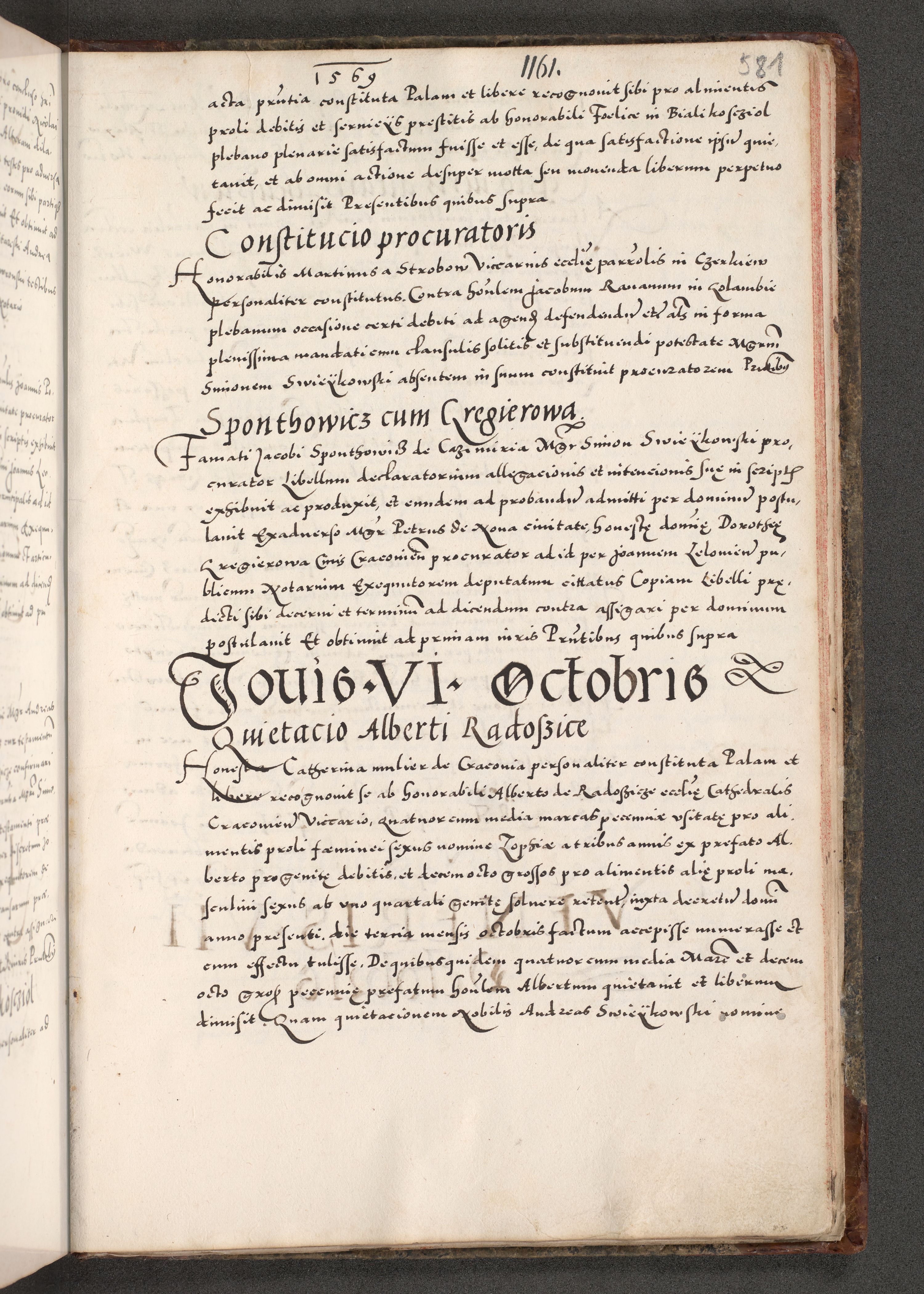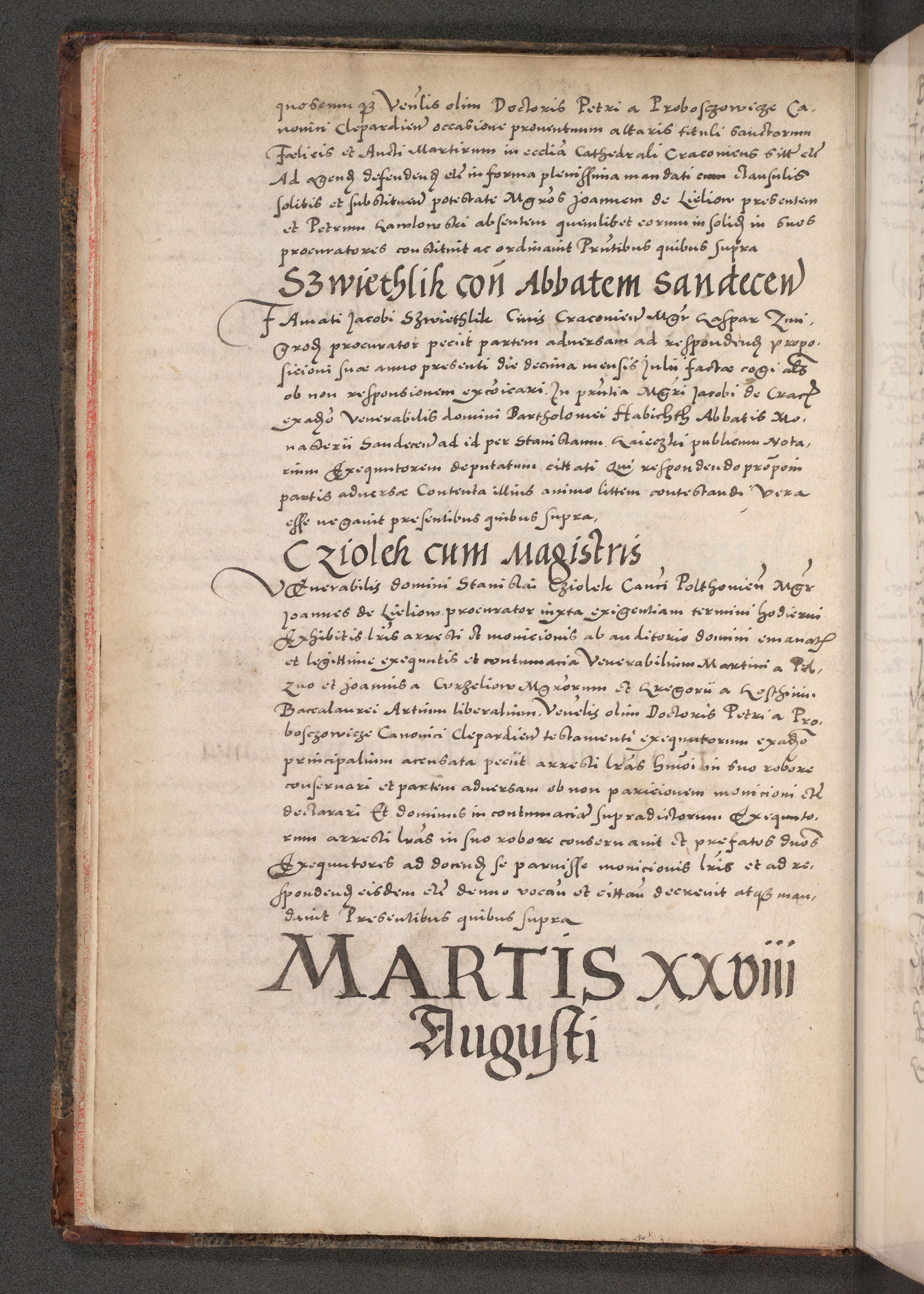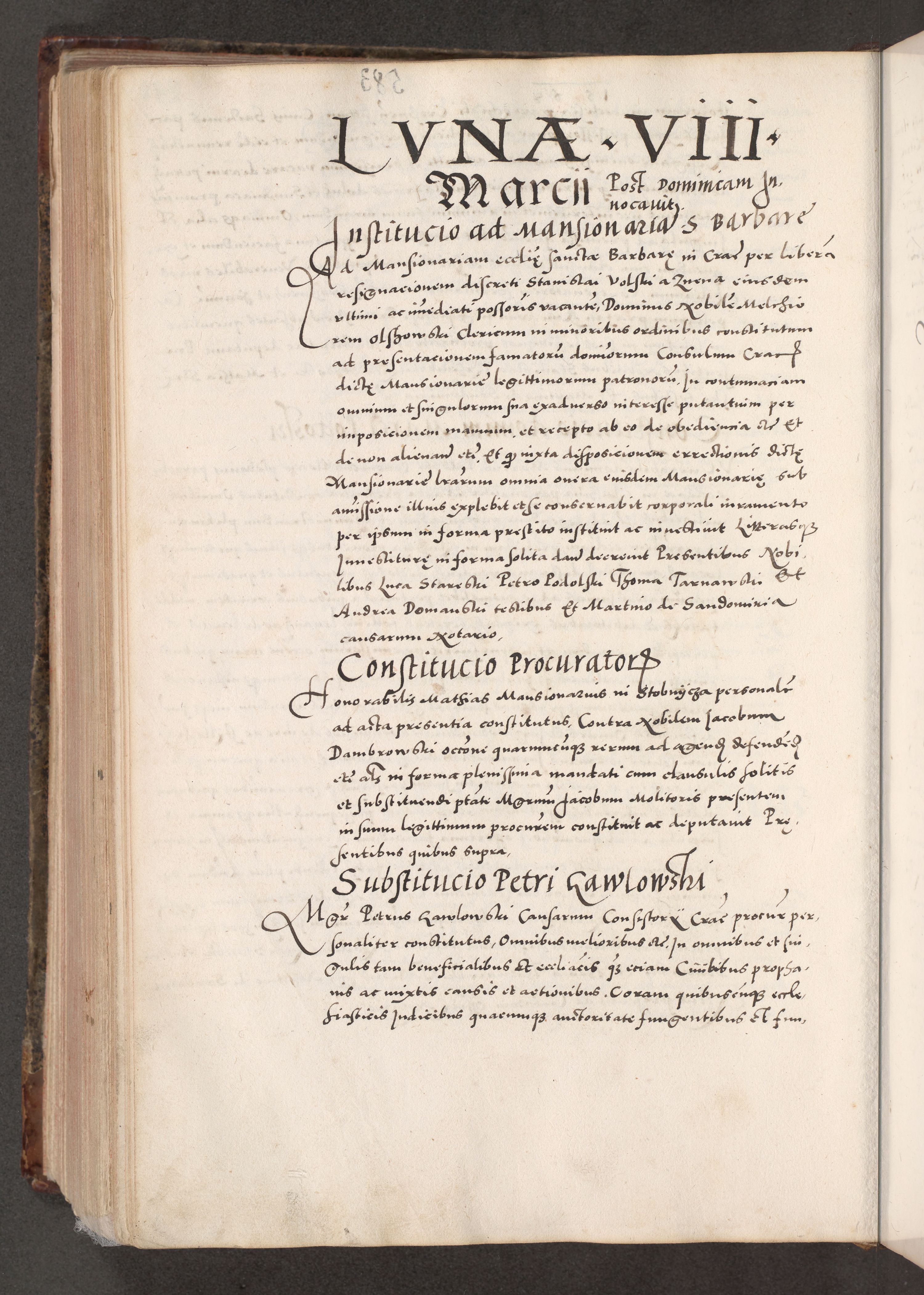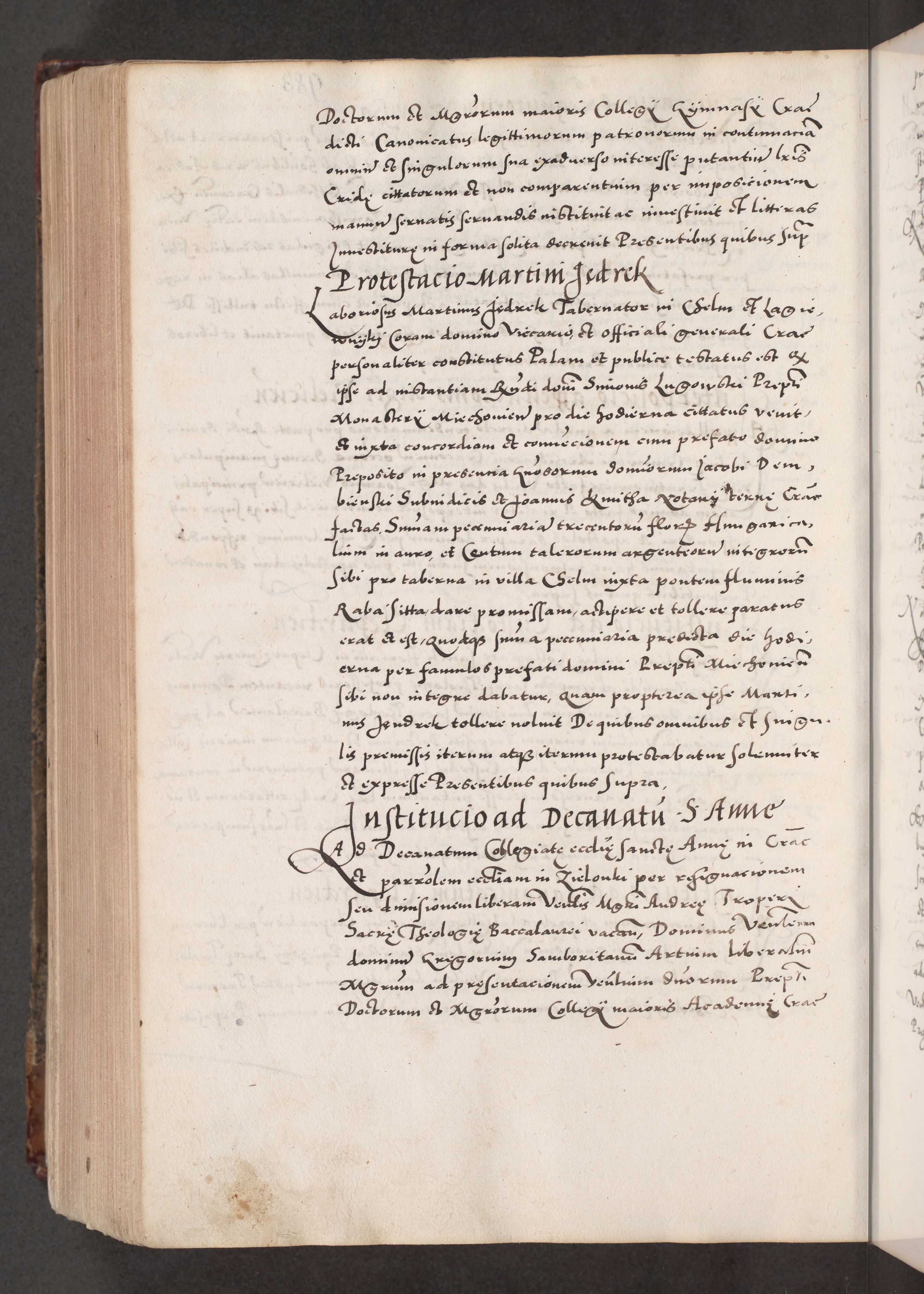 Acta actorum causarum, sententiarum tam diffinitivarum quam interloquutoriarum, decretorum, obligationum, quietationum, constitutionum procuratorum etc. coram reverendo domino Martino Izdbienski de Russiecz archidiacono Posnaniensi, custode et in spiritualibus vicario generali Cracoviensi, ad annum Domini millesimum quingesimum sexagesimum quintum, cuius indictio octava, pontificatus Pii pape, annus sextus, continuantur