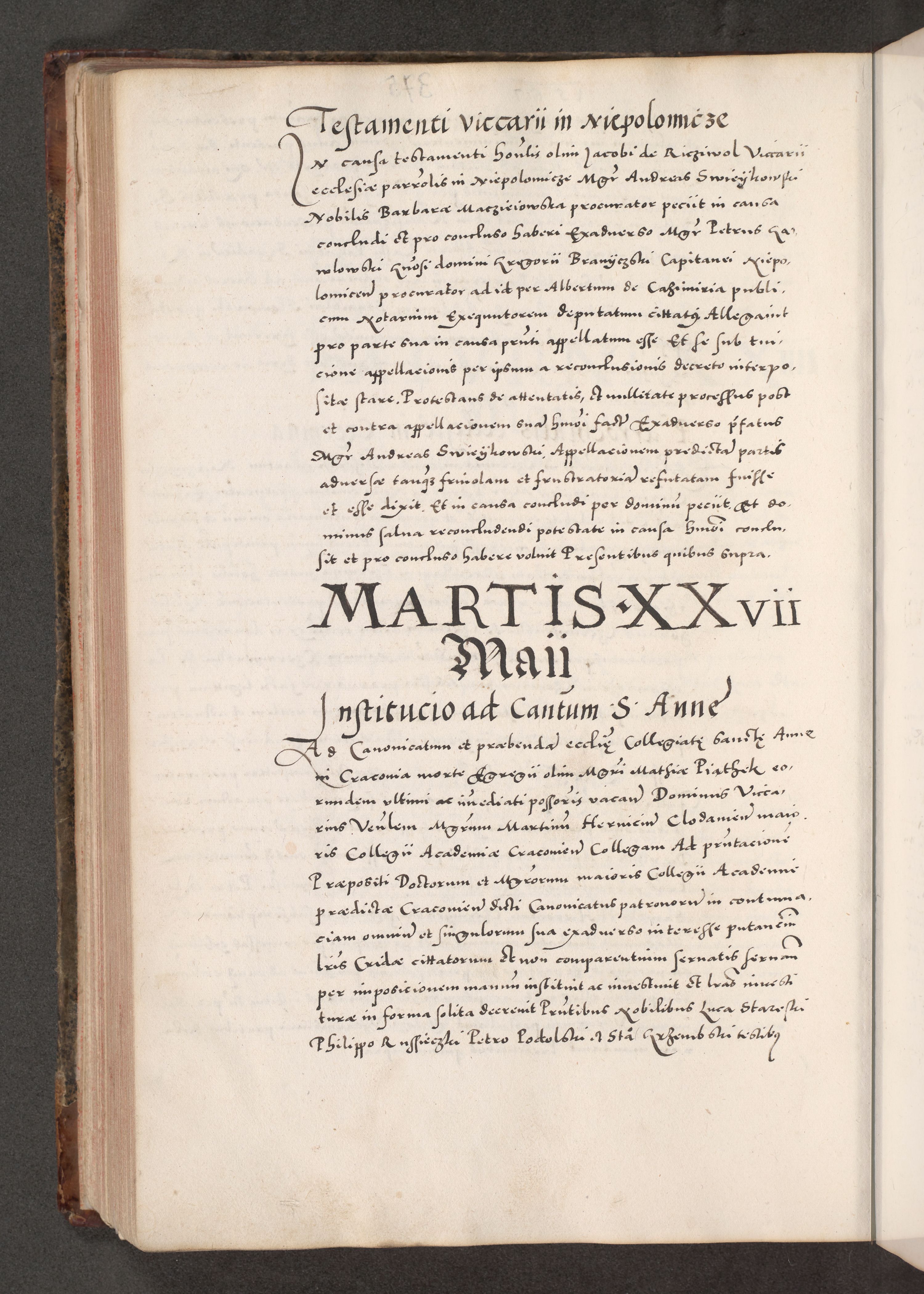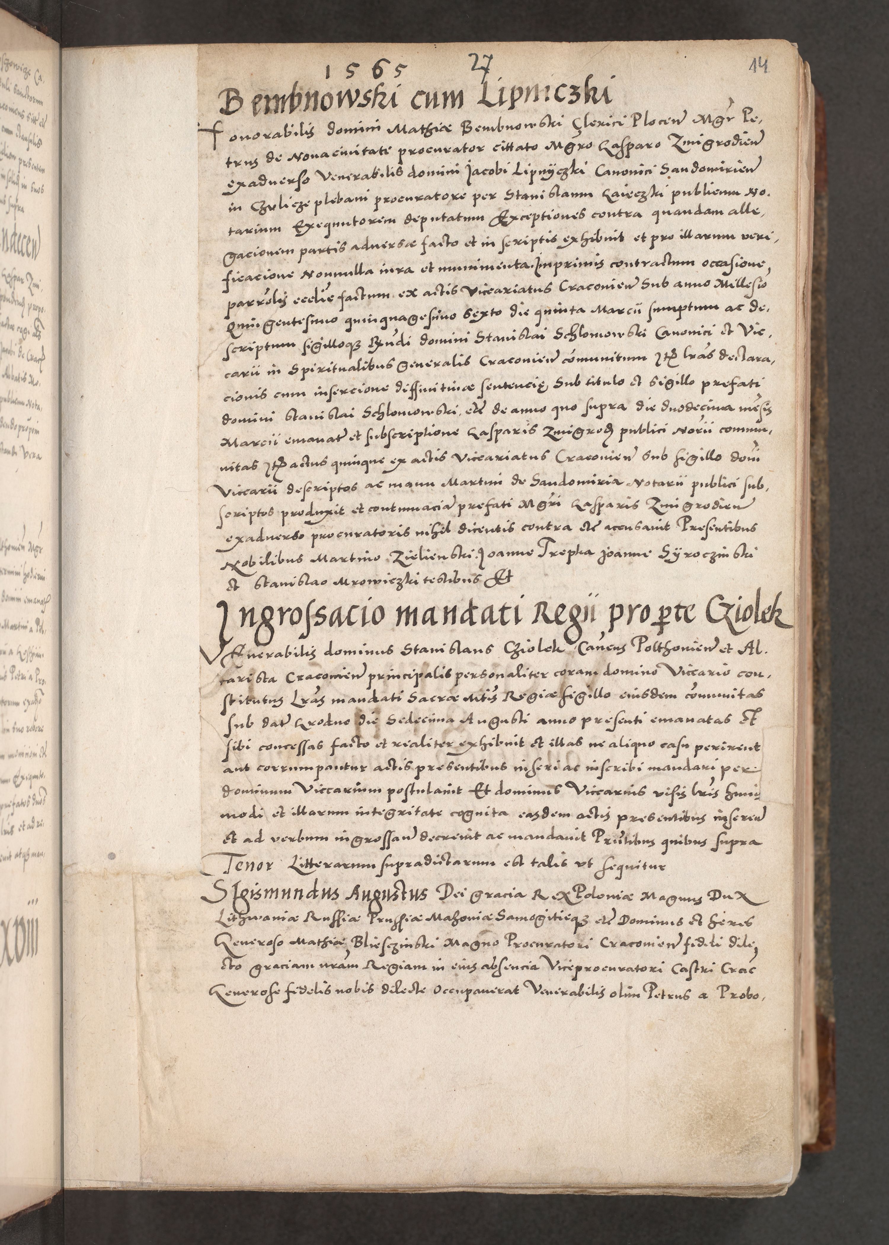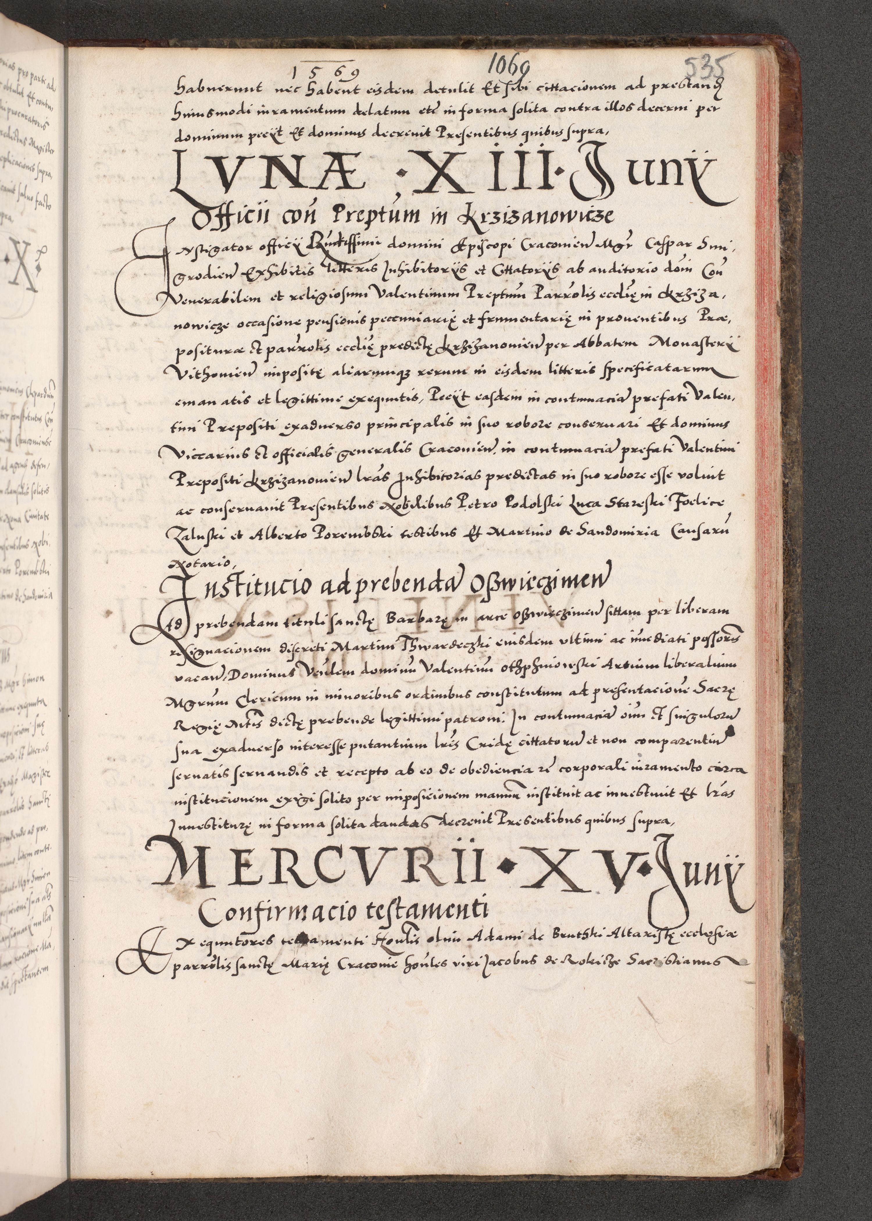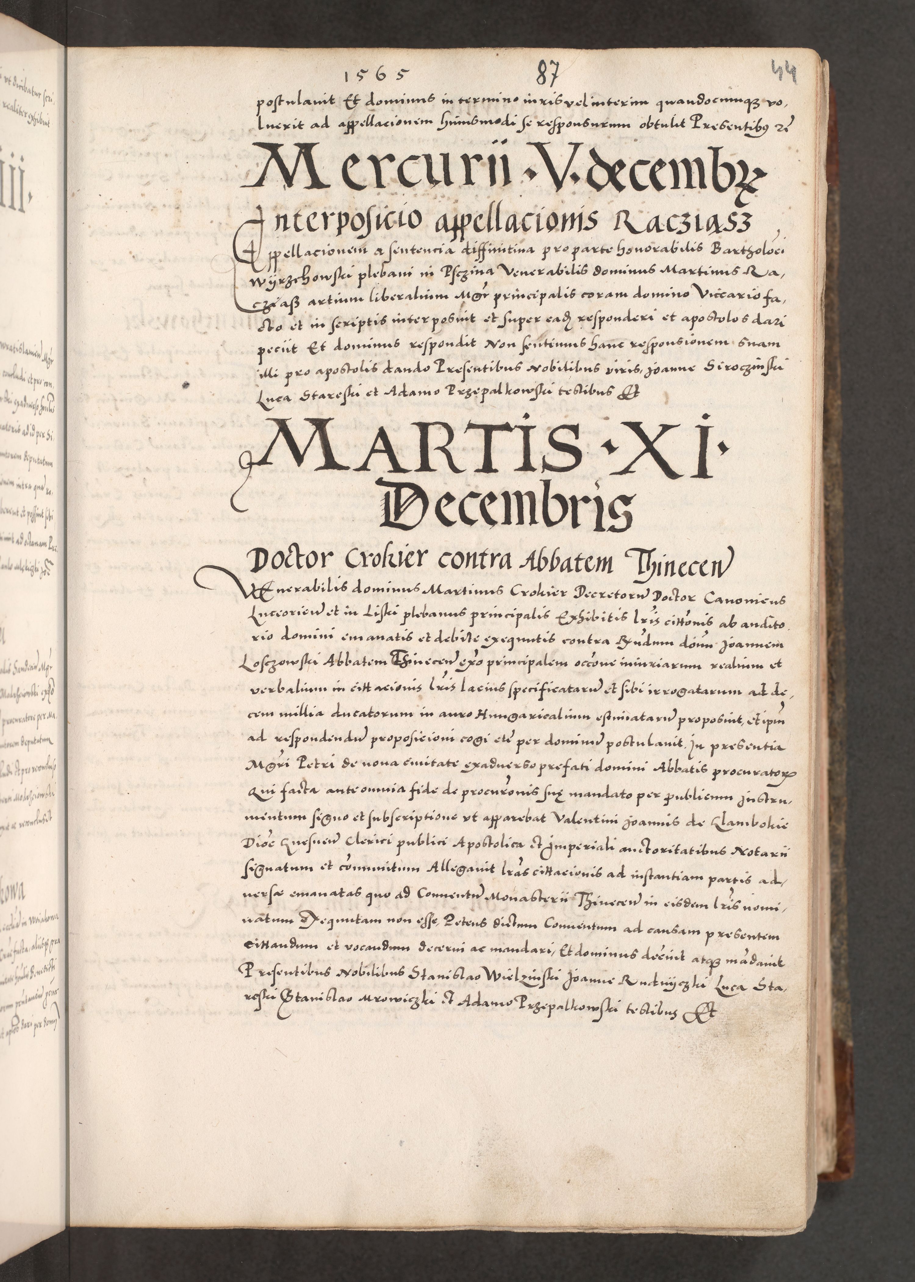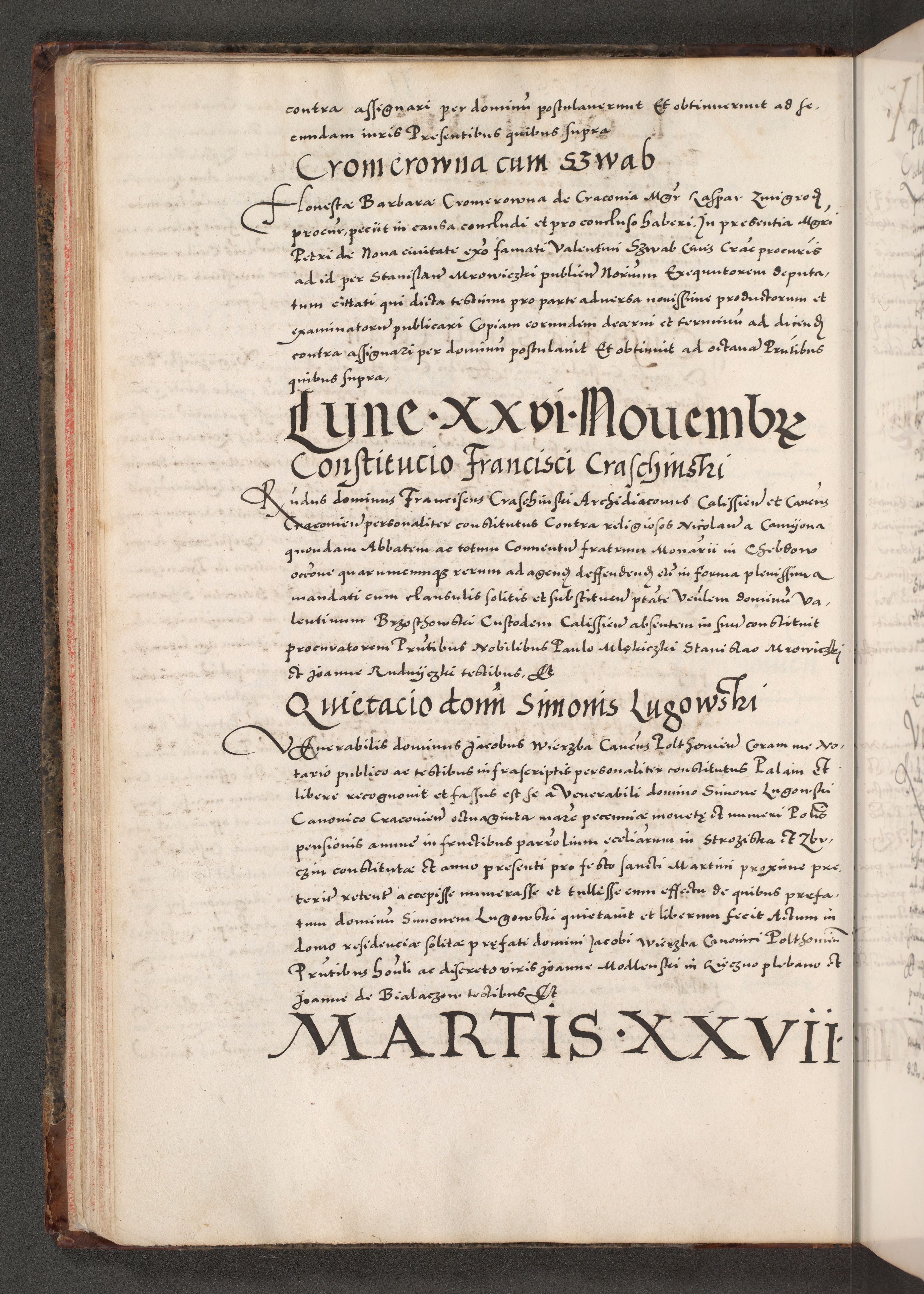 Acta actorum causarum, sententiarum tam diffinitivarum quam interloquutoriarum, decretorum, obligationum, quietationum, constitutionum procuratorum etc. coram reverendo domino Martino Izdbienski de Russiecz archidiacono Posnaniensi, custode et in spiritualibus vicario generali Cracoviensi, ad annum Domini millesimum quingesimum sexagesimum quintum, cuius indictio octava, pontificatus Pii pape, annus sextus, continuantur