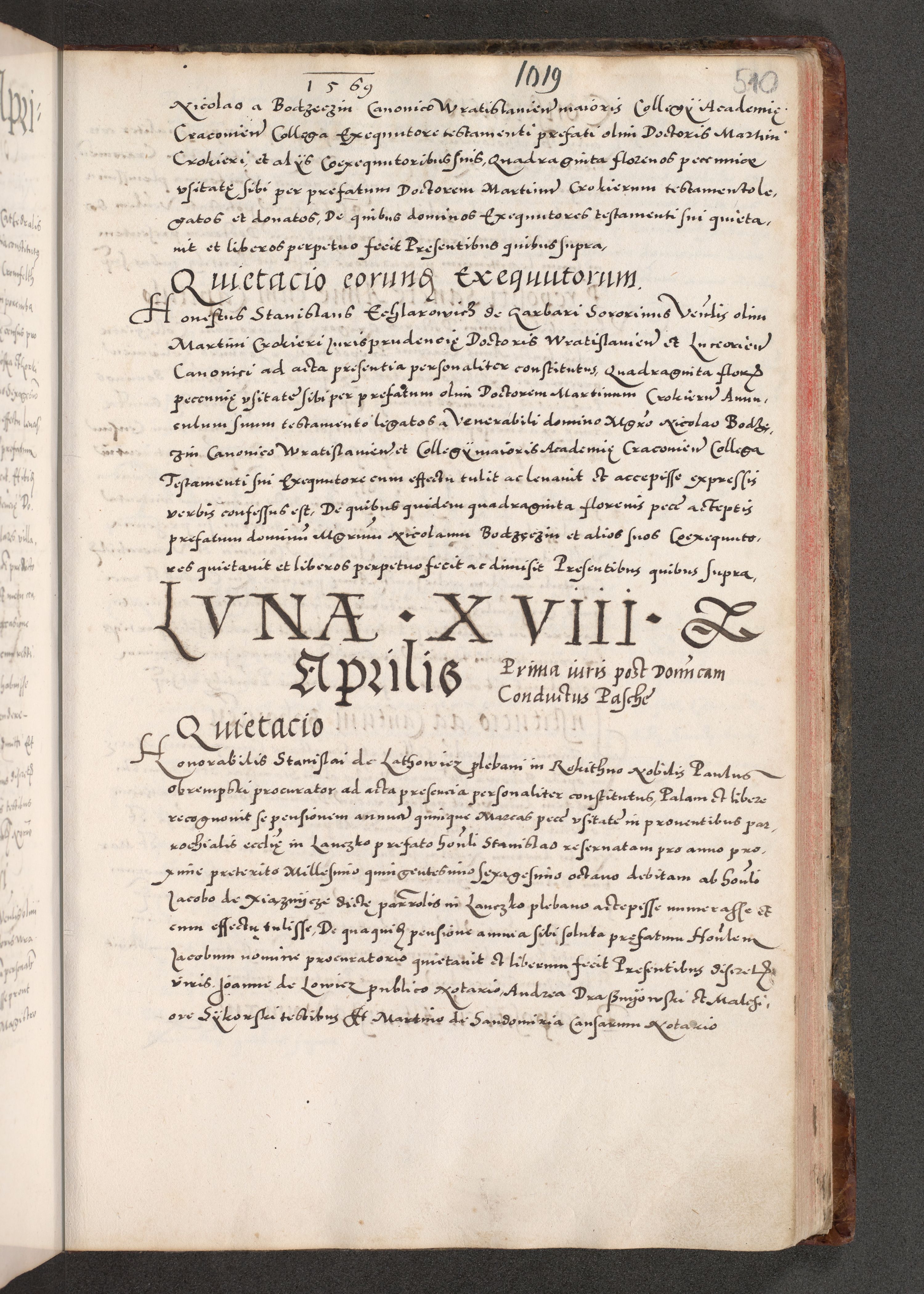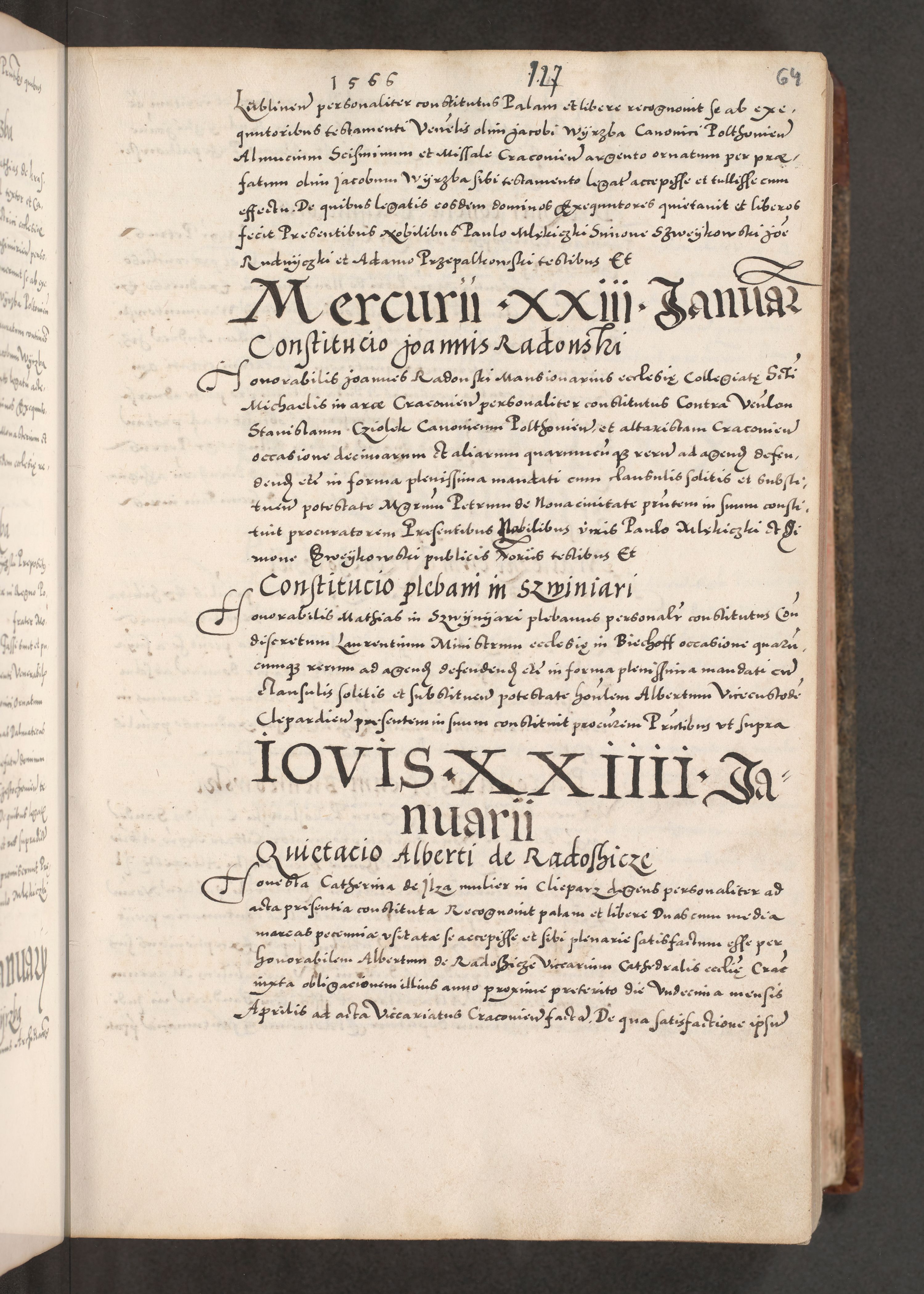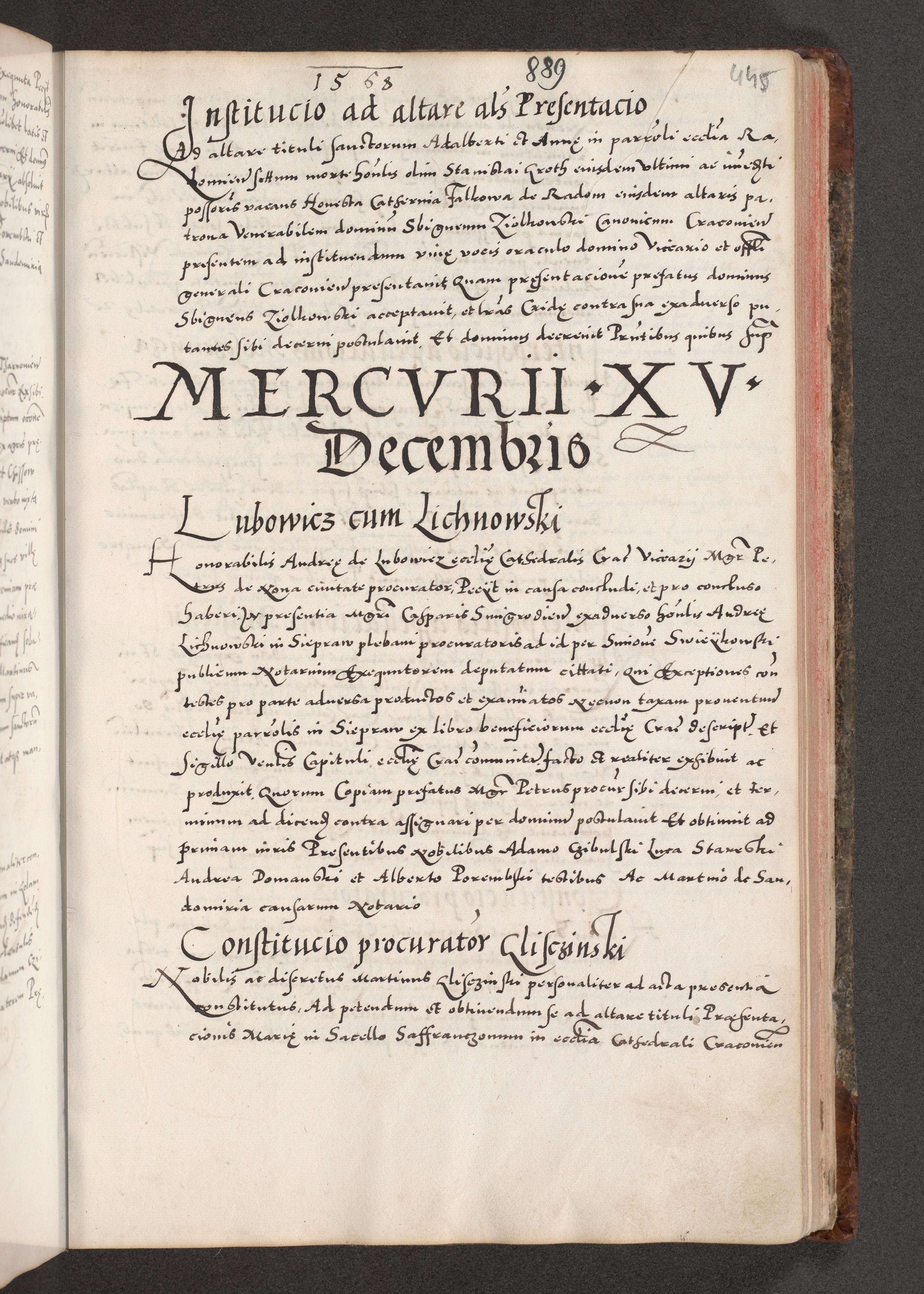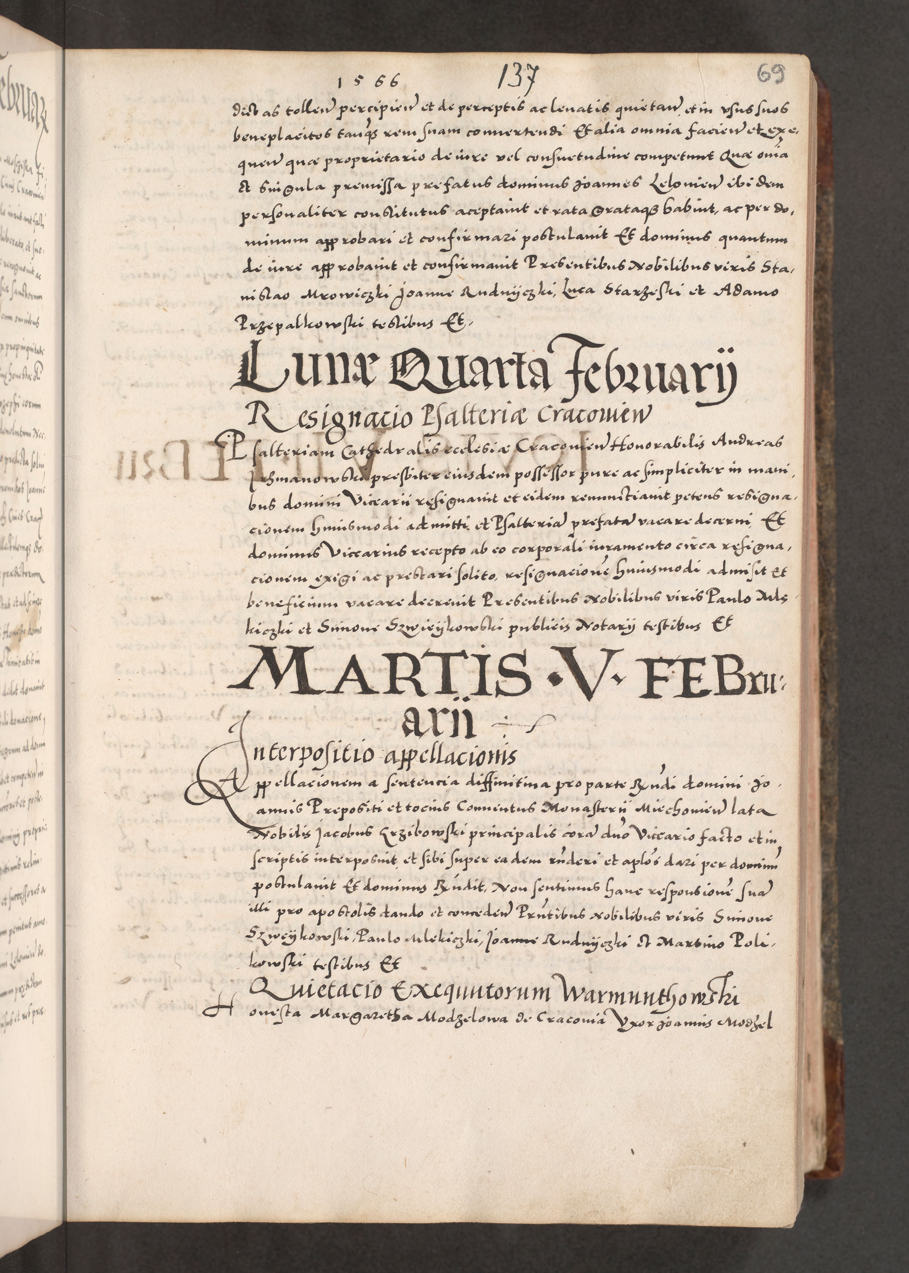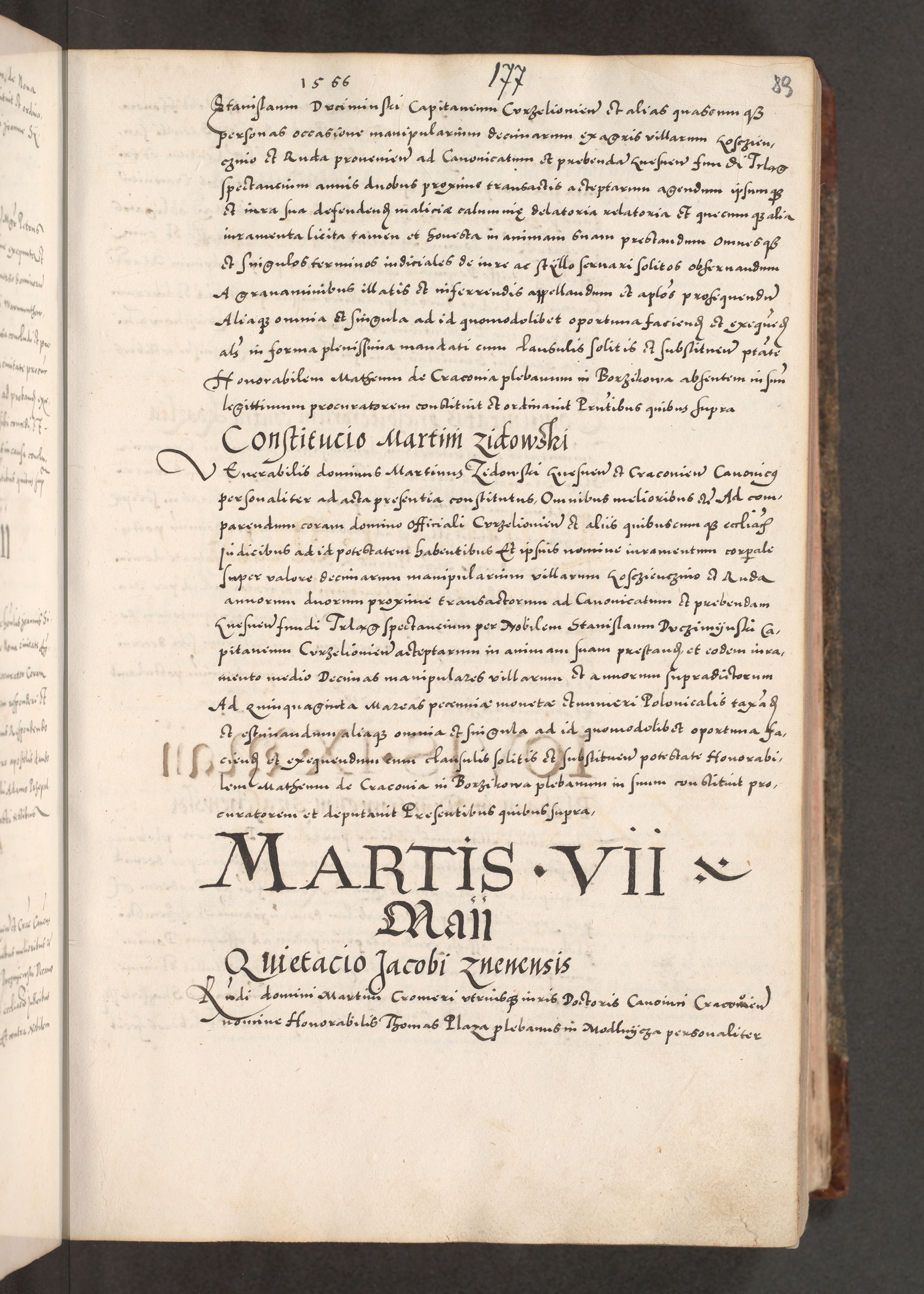 Acta actorum causarum, sententiarum tam diffinitivarum quam interloquutoriarum, decretorum, obligationum, quietationum, constitutionum procuratorum etc. coram reverendo domino Martino Izdbienski de Russiecz archidiacono Posnaniensi, custode et in spiritualibus vicario generali Cracoviensi, ad annum Domini millesimum quingesimum sexagesimum quintum, cuius indictio octava, pontificatus Pii pape, annus sextus, continuantur