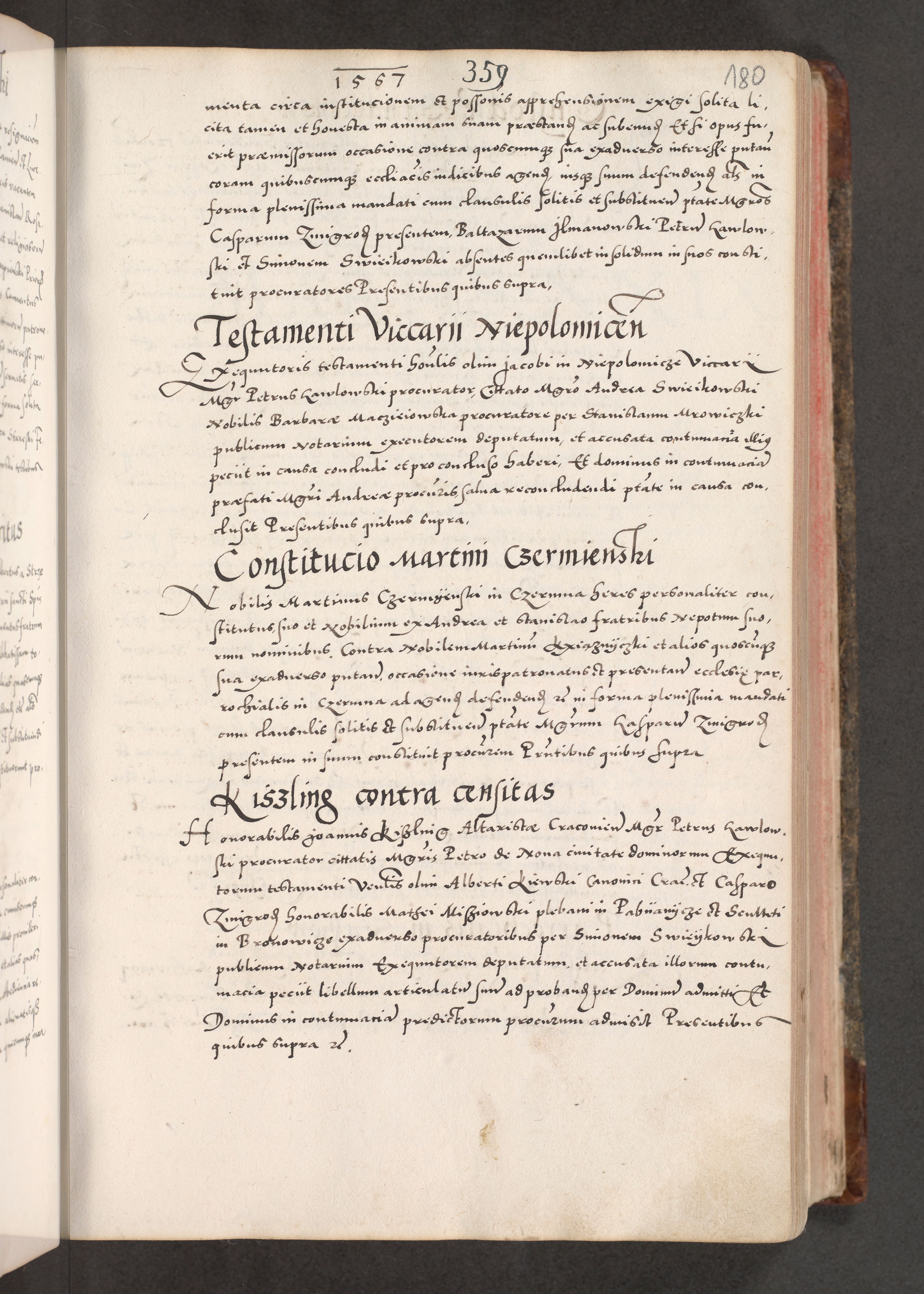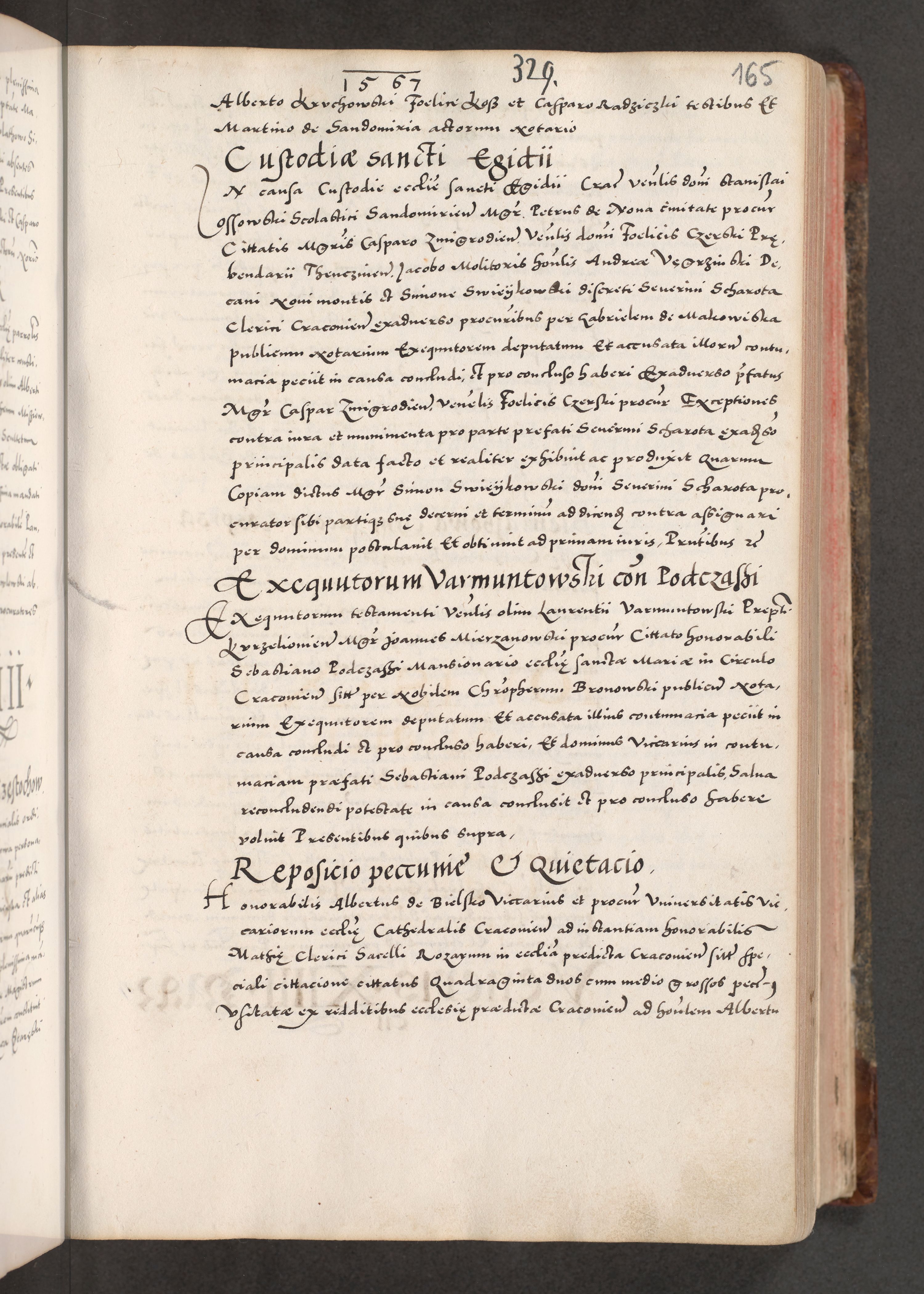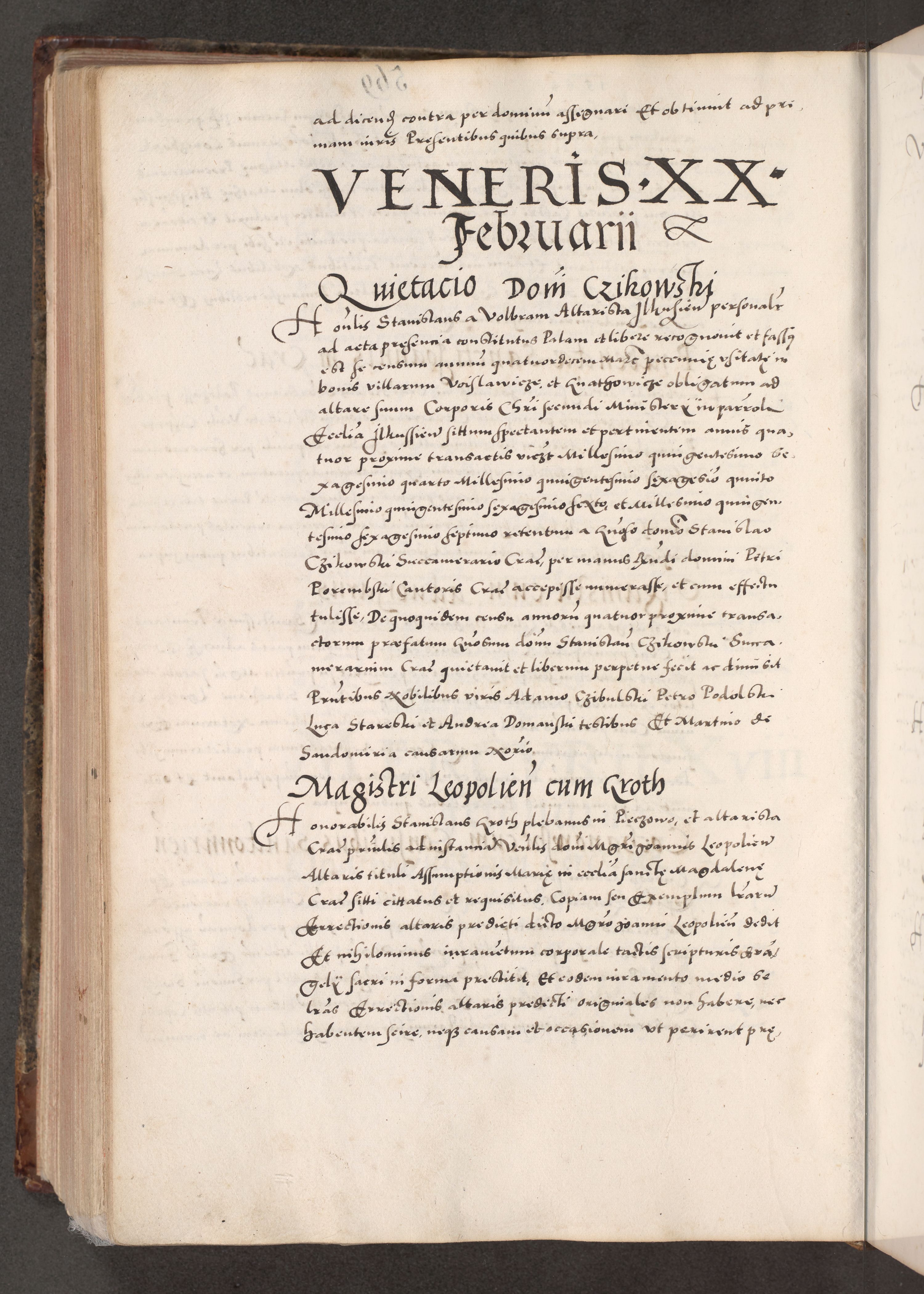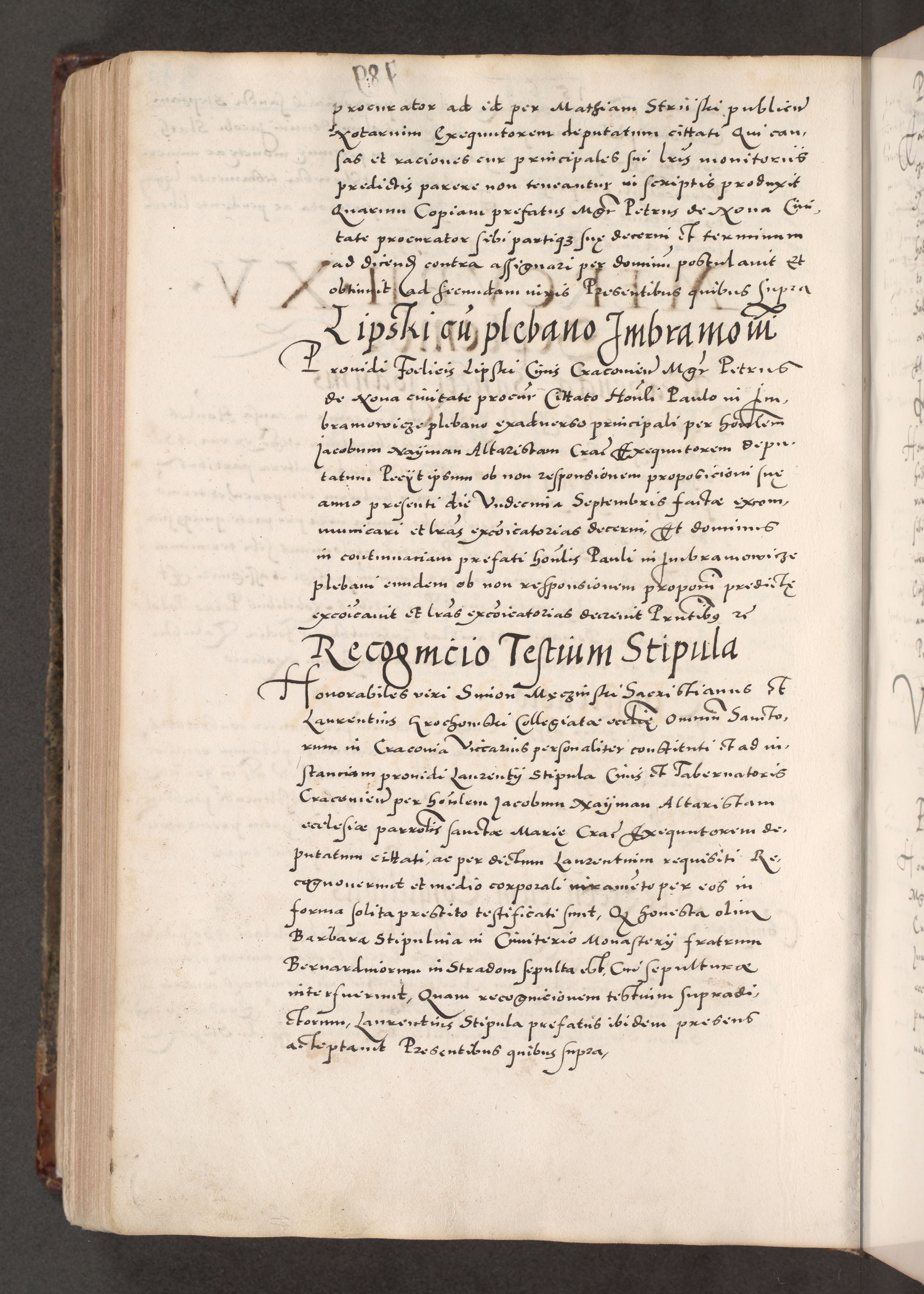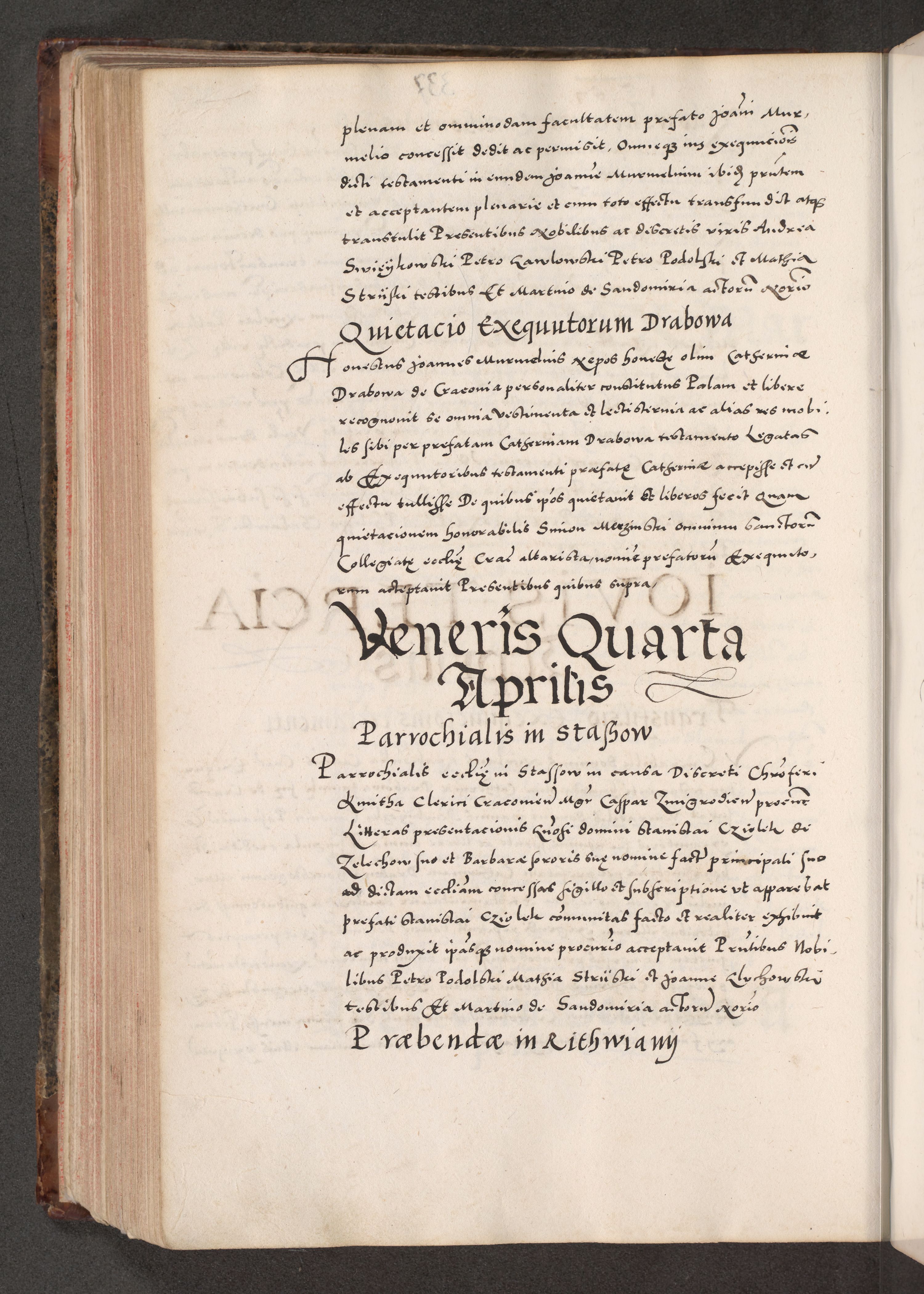 Acta actorum causarum, sententiarum tam diffinitivarum quam interloquutoriarum, decretorum, obligationum, quietationum, constitutionum procuratorum etc. coram reverendo domino Martino Izdbienski de Russiecz archidiacono Posnaniensi, custode et in spiritualibus vicario generali Cracoviensi, ad annum Domini millesimum quingesimum sexagesimum quintum, cuius indictio octava, pontificatus Pii pape, annus sextus, continuantur