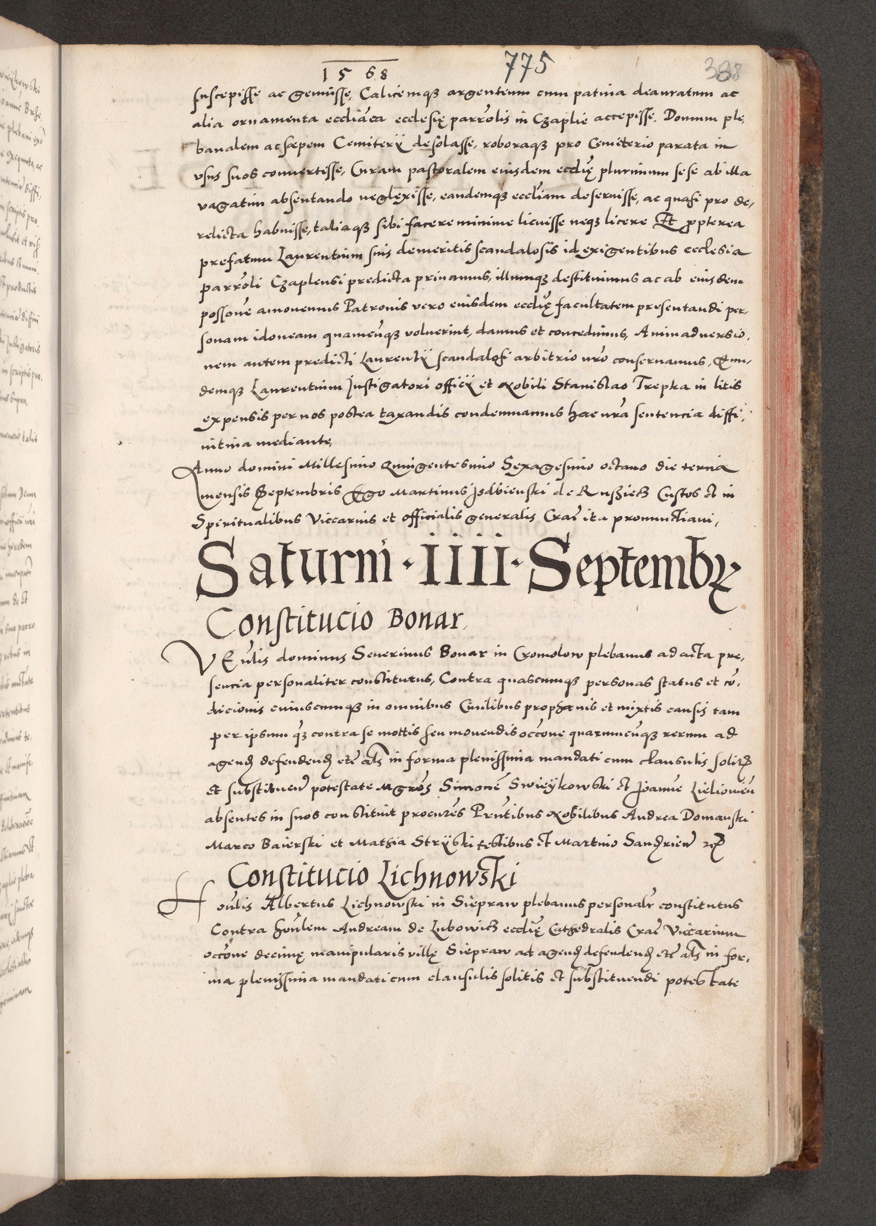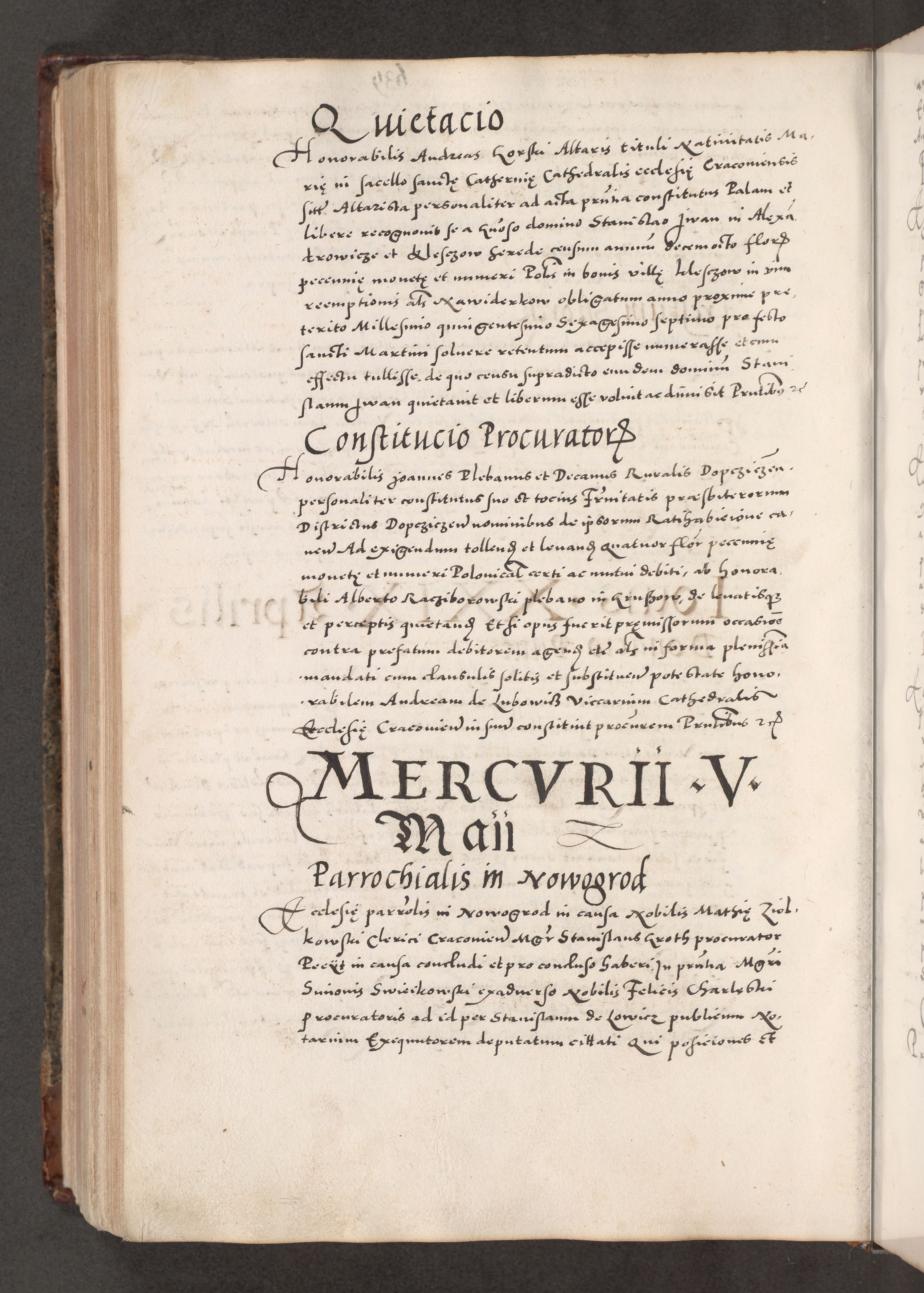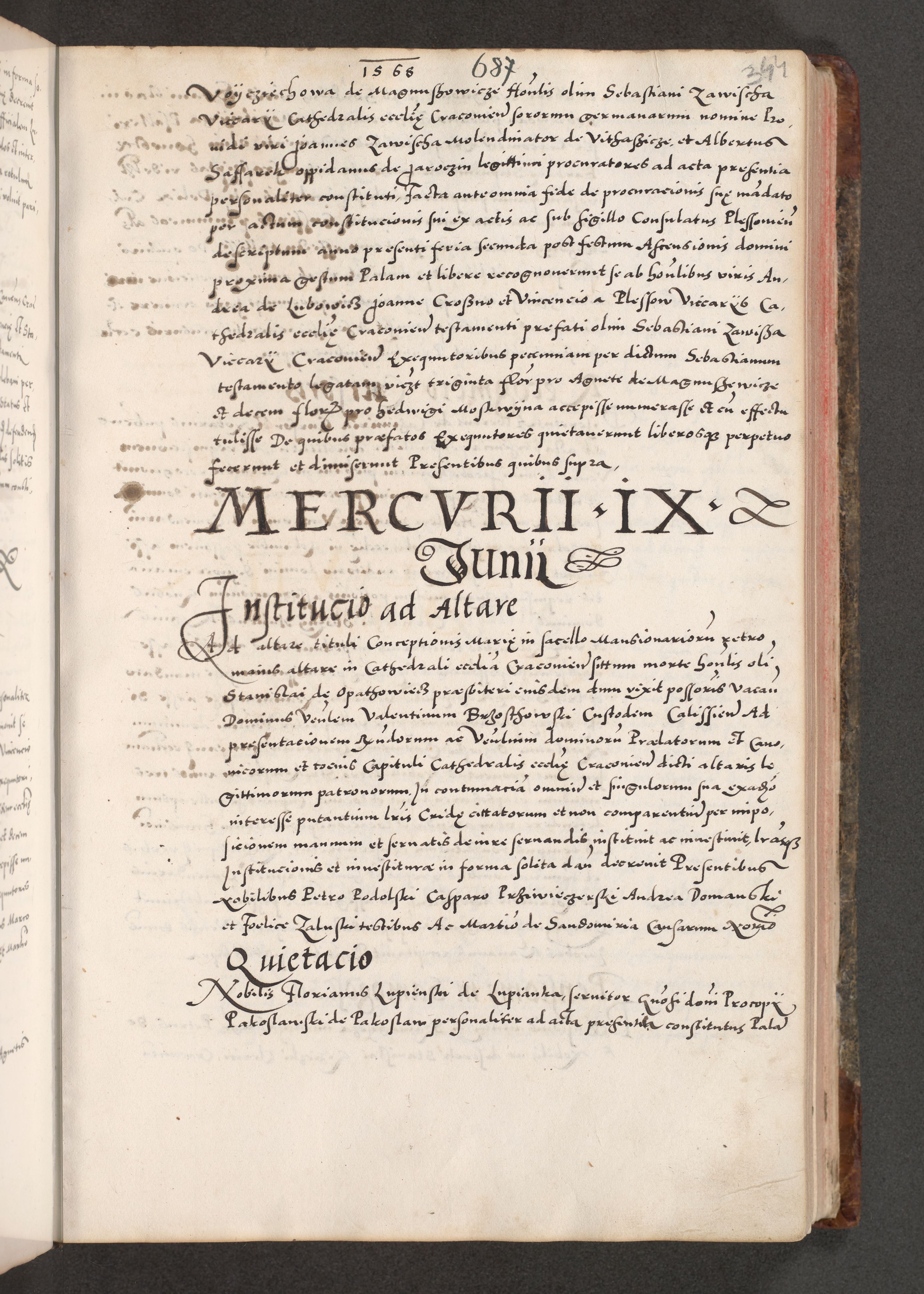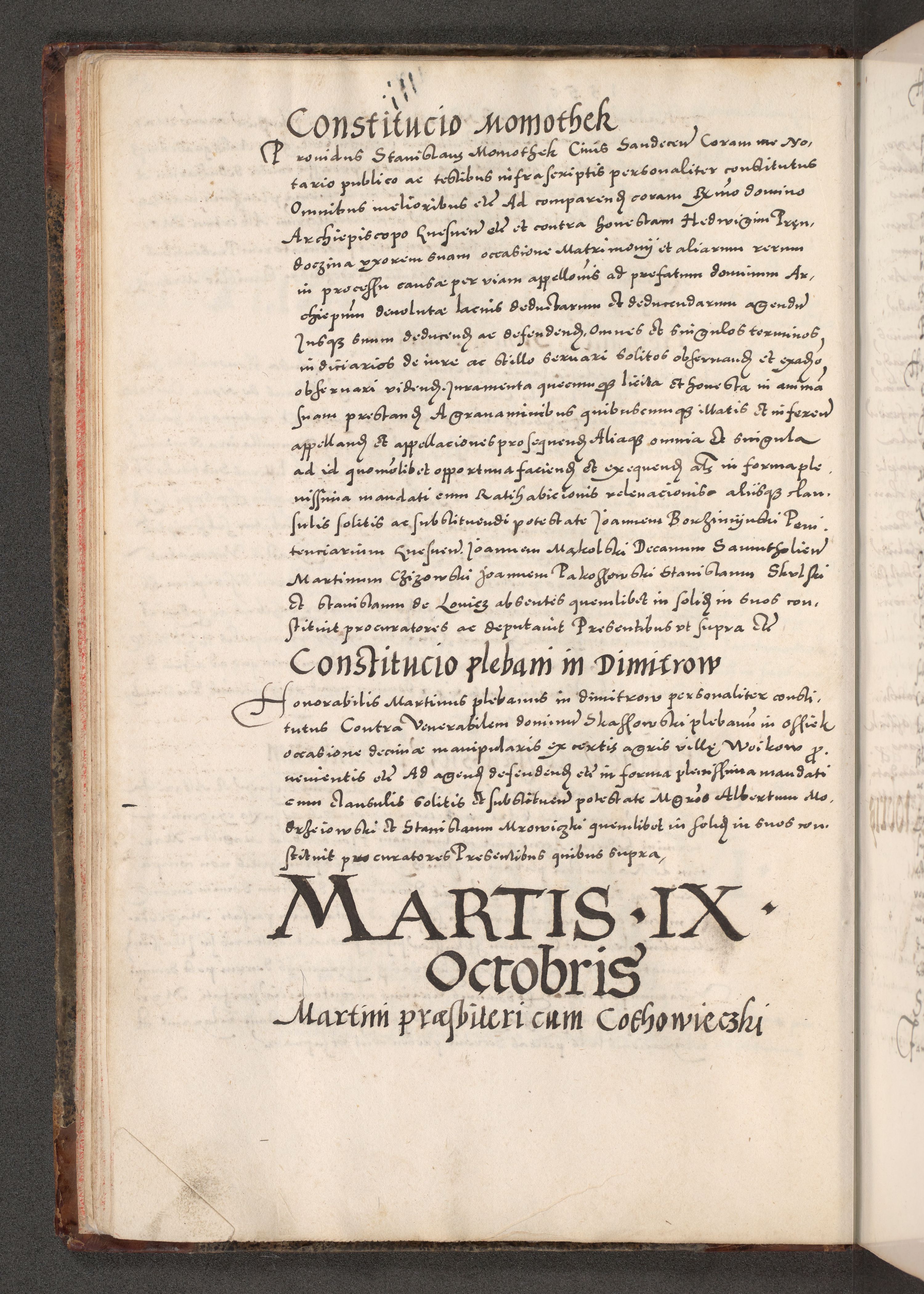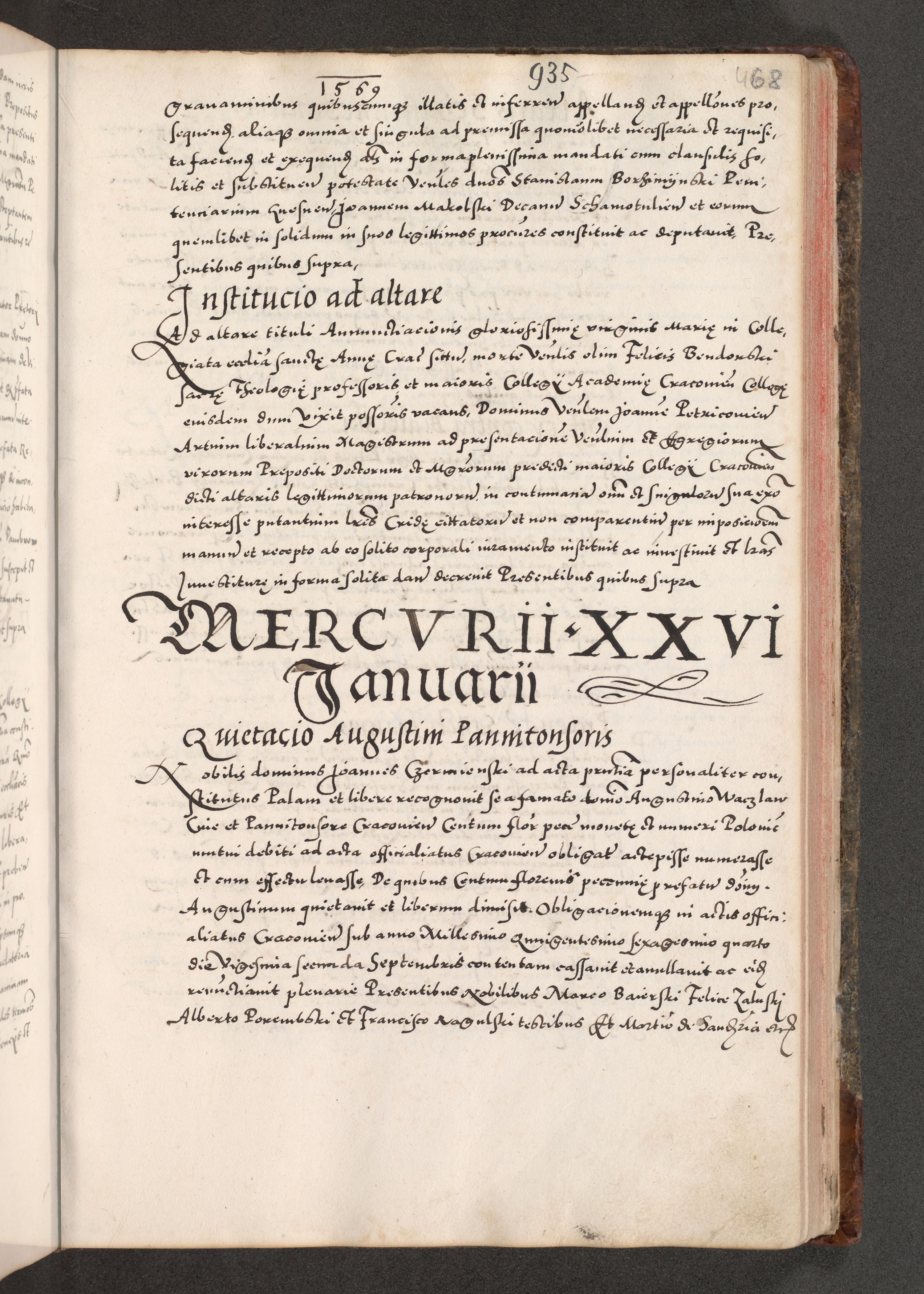Acta actorum causarum, sententiarum tam diffinitivarum quam interloquutoriarum, decretorum, obligationum, quietationum, constitutionum procuratorum etc. coram reverendo domino Martino Izdbienski de Russiecz archidiacono Posnaniensi, custode et in spiritualibus vicario generali Cracoviensi, ad annum Domini millesimum quingesimum sexagesimum quintum, cuius indictio octava, pontificatus Pii pape, annus sextus, continuantur