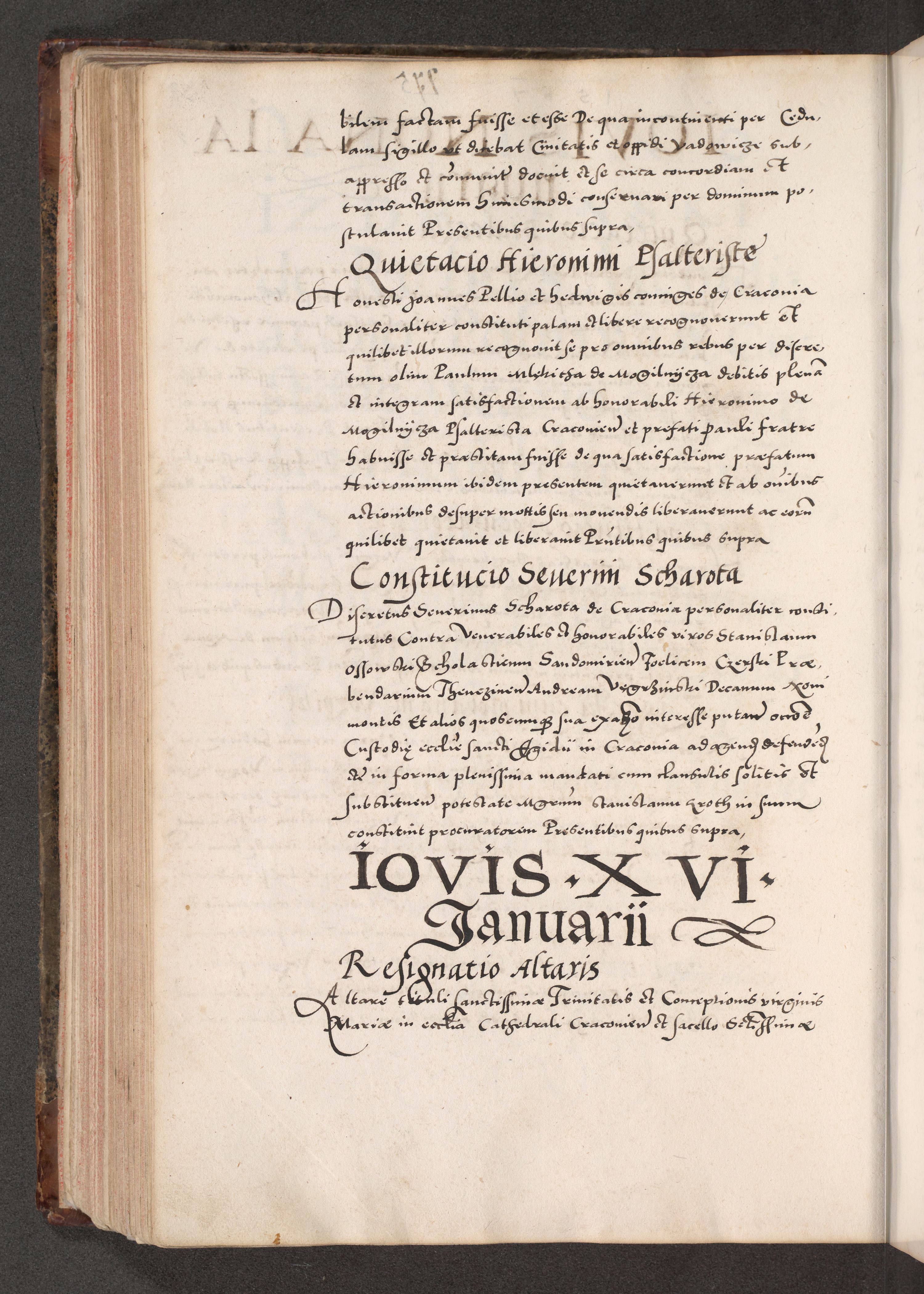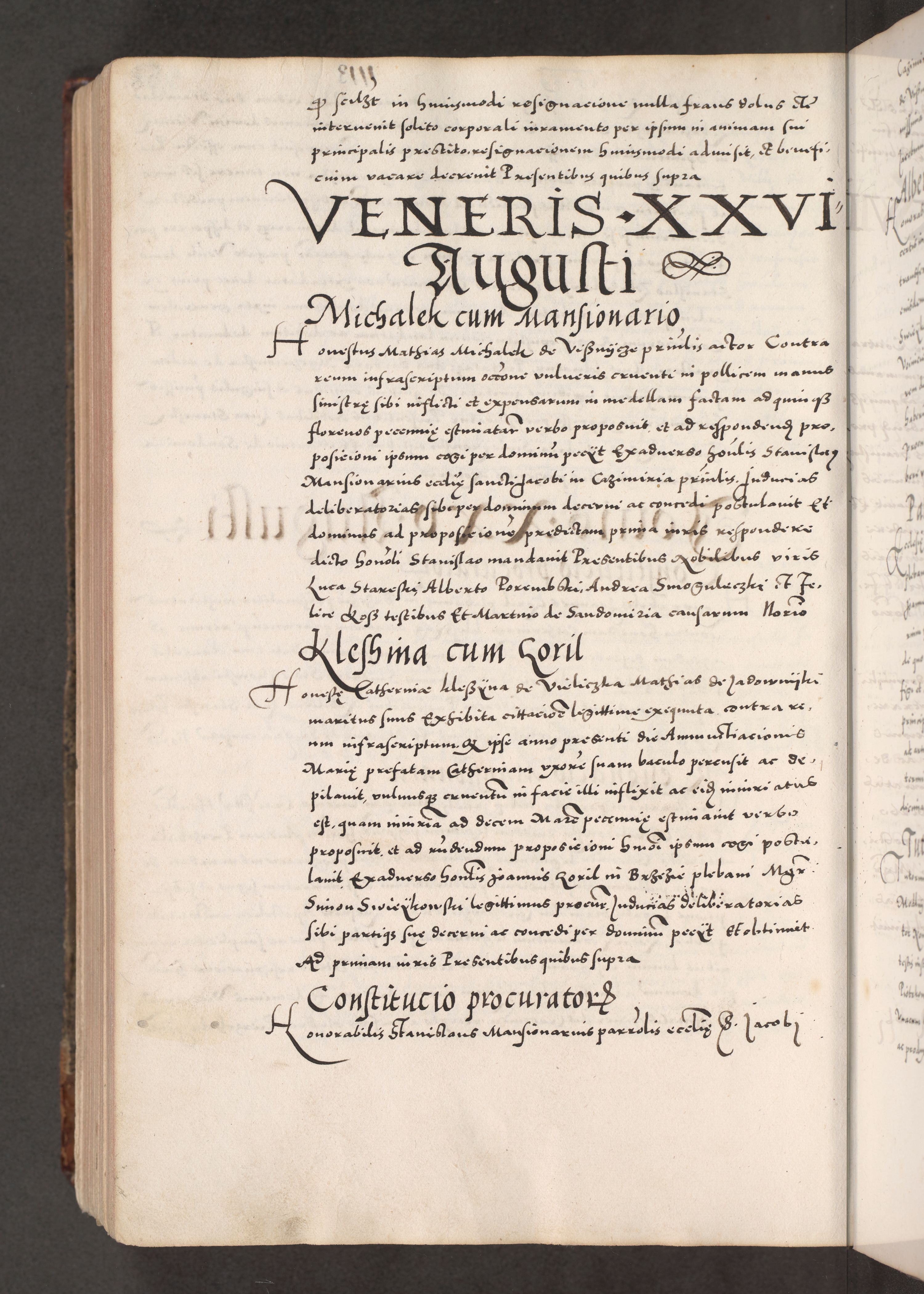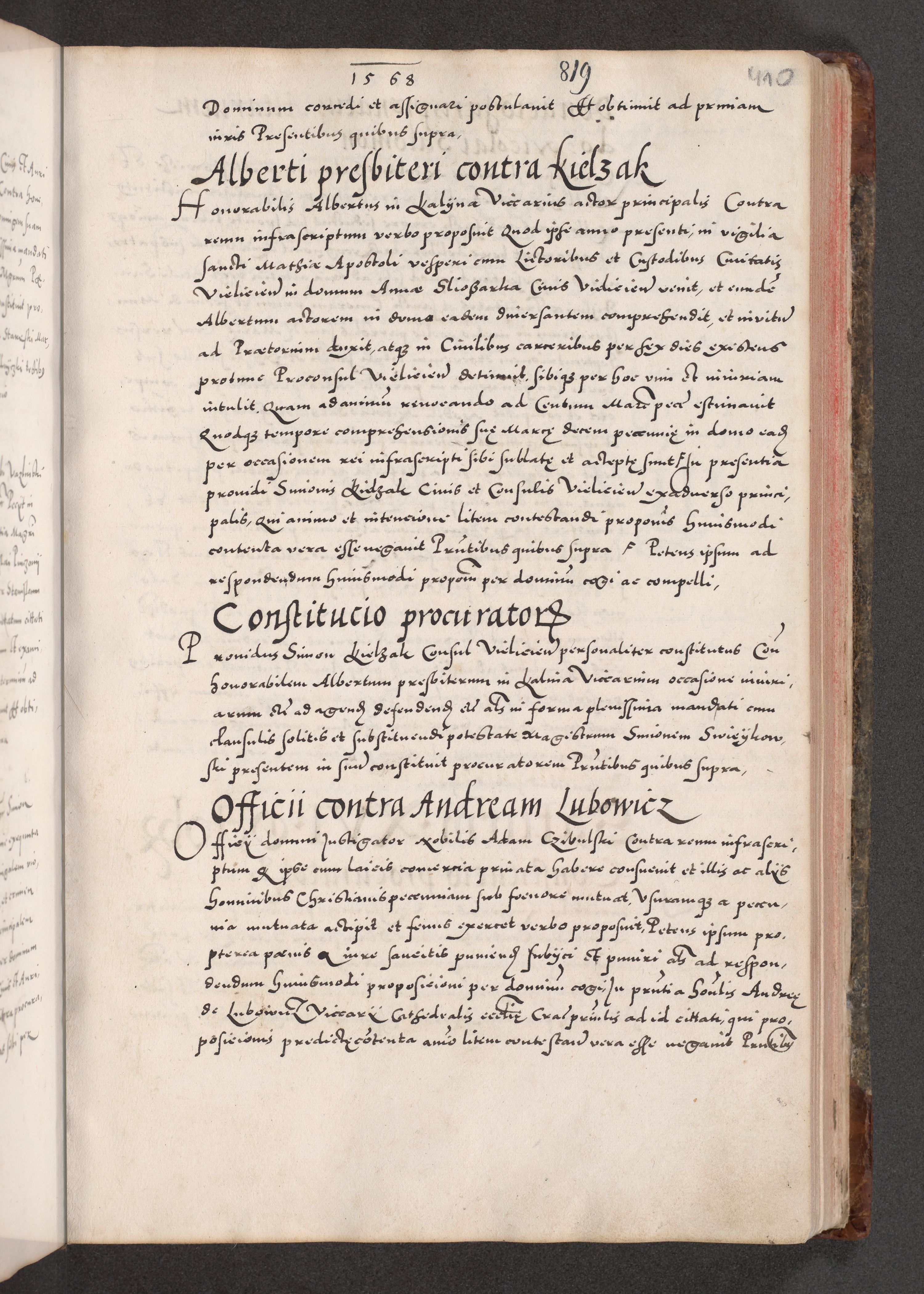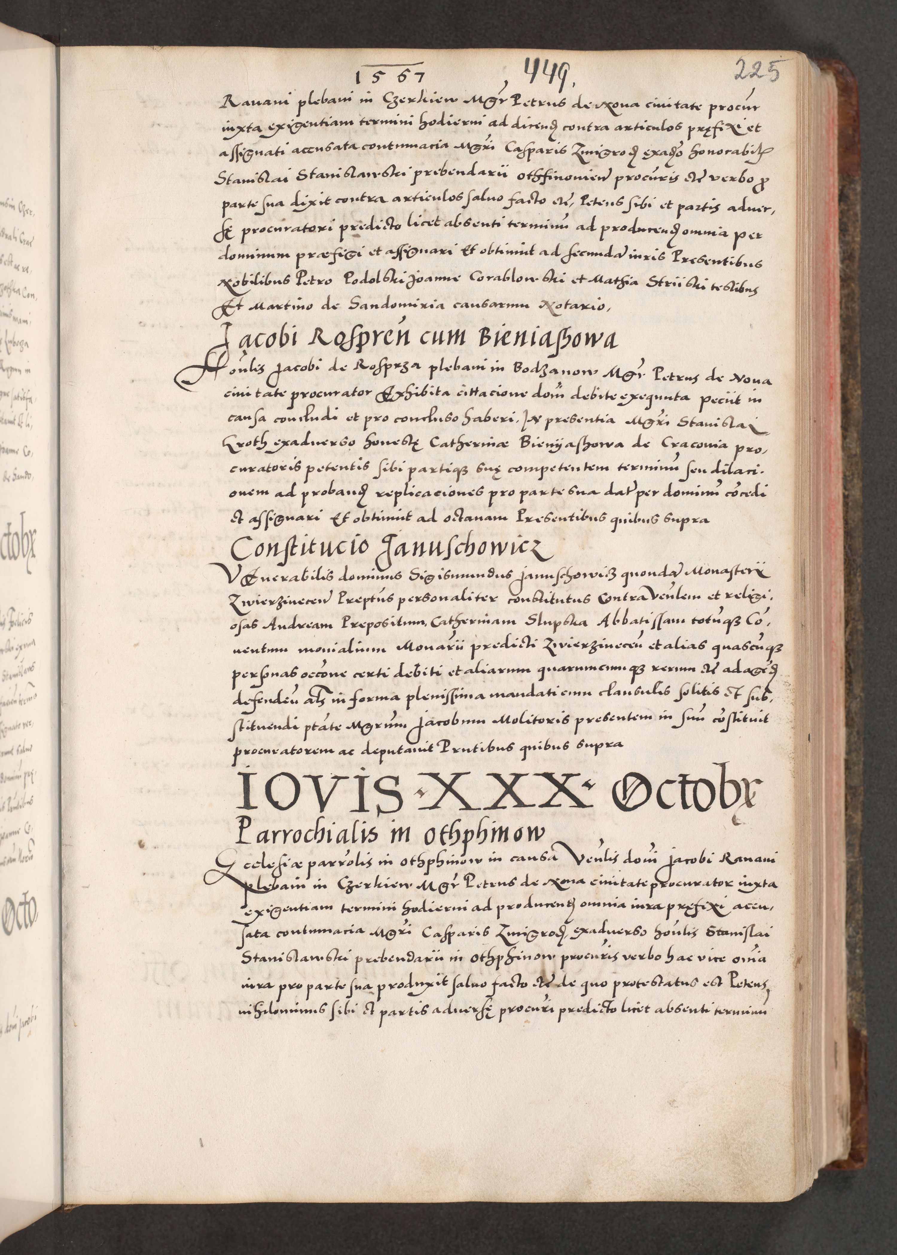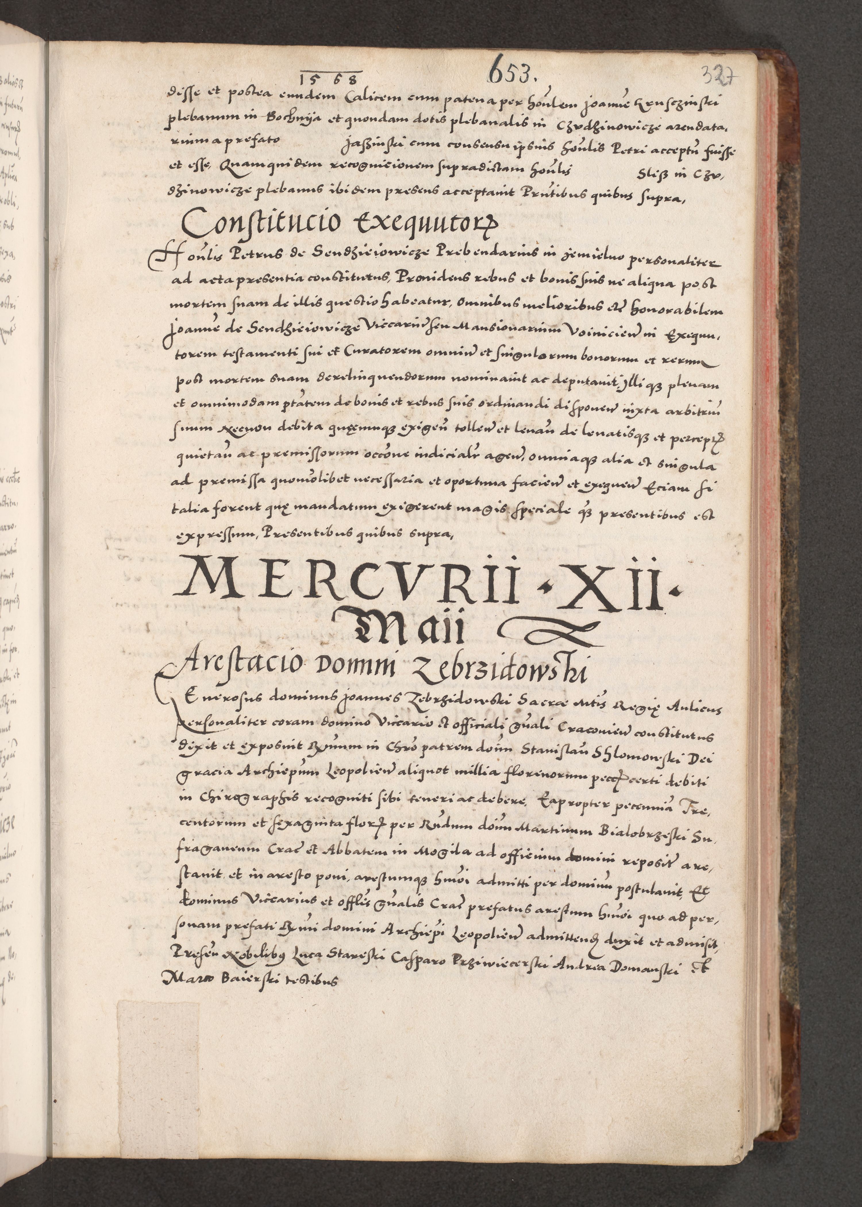 Acta actorum causarum, sententiarum tam diffinitivarum quam interloquutoriarum, decretorum, obligationum, quietationum, constitutionum procuratorum etc. coram reverendo domino Martino Izdbienski de Russiecz archidiacono Posnaniensi, custode et in spiritualibus vicario generali Cracoviensi, ad annum Domini millesimum quingesimum sexagesimum quintum, cuius indictio octava, pontificatus Pii pape, annus sextus, continuantur