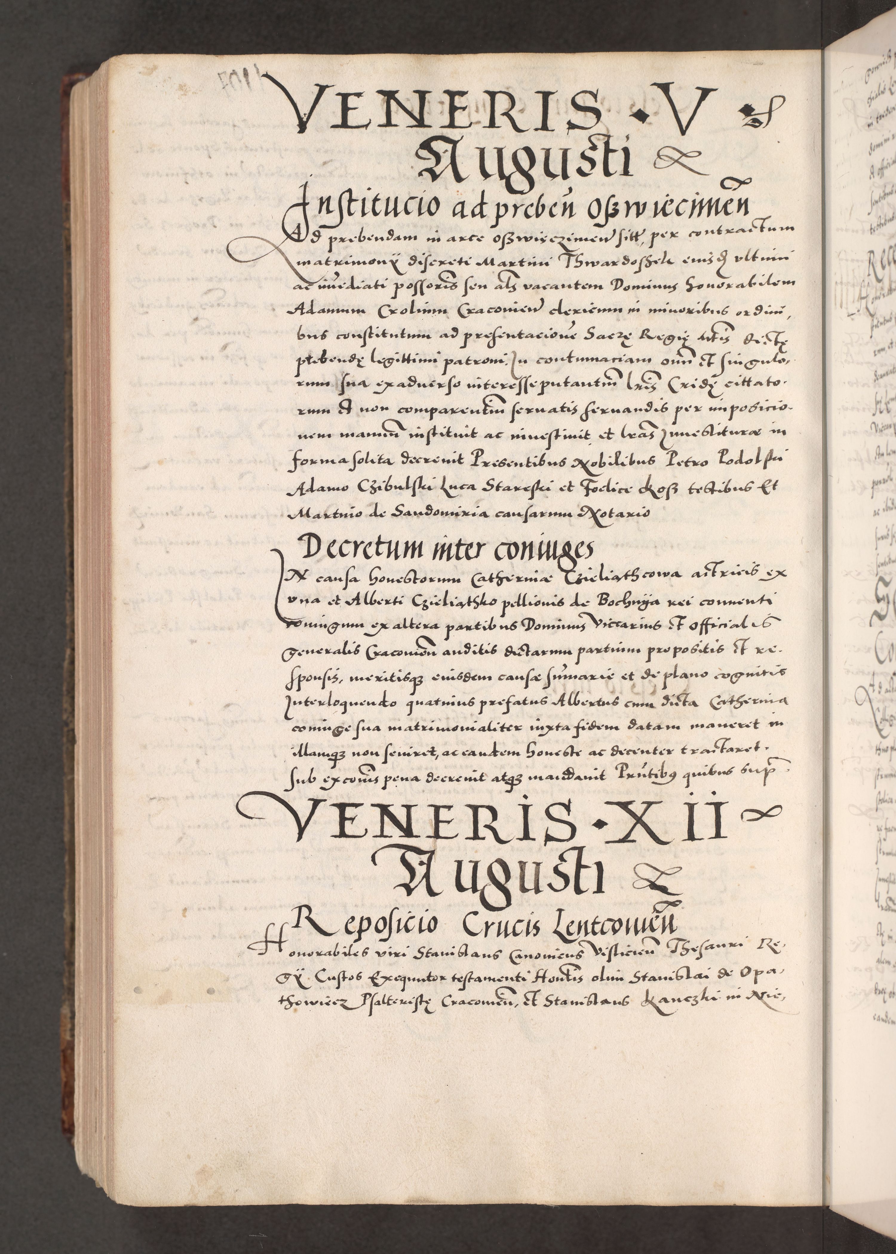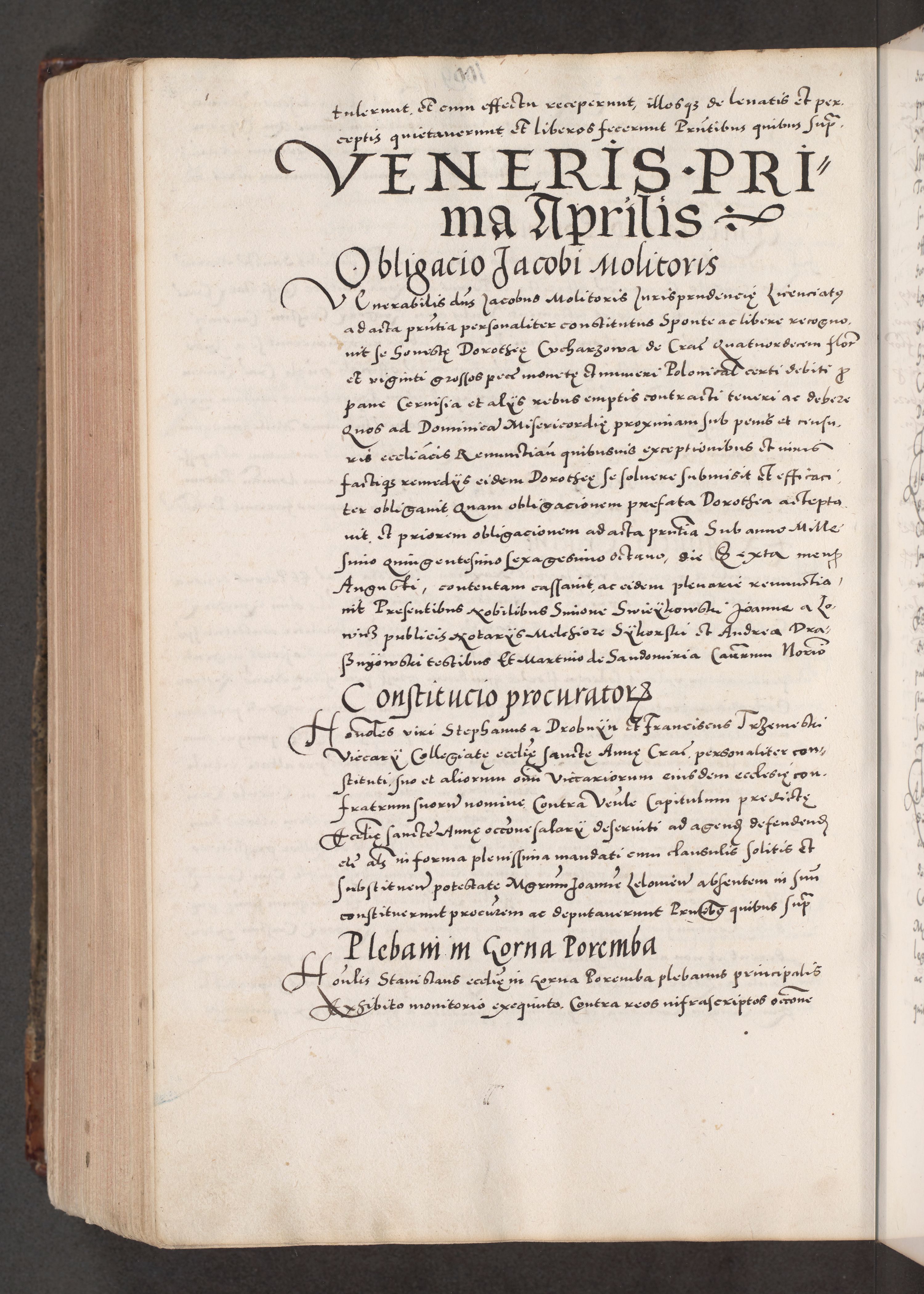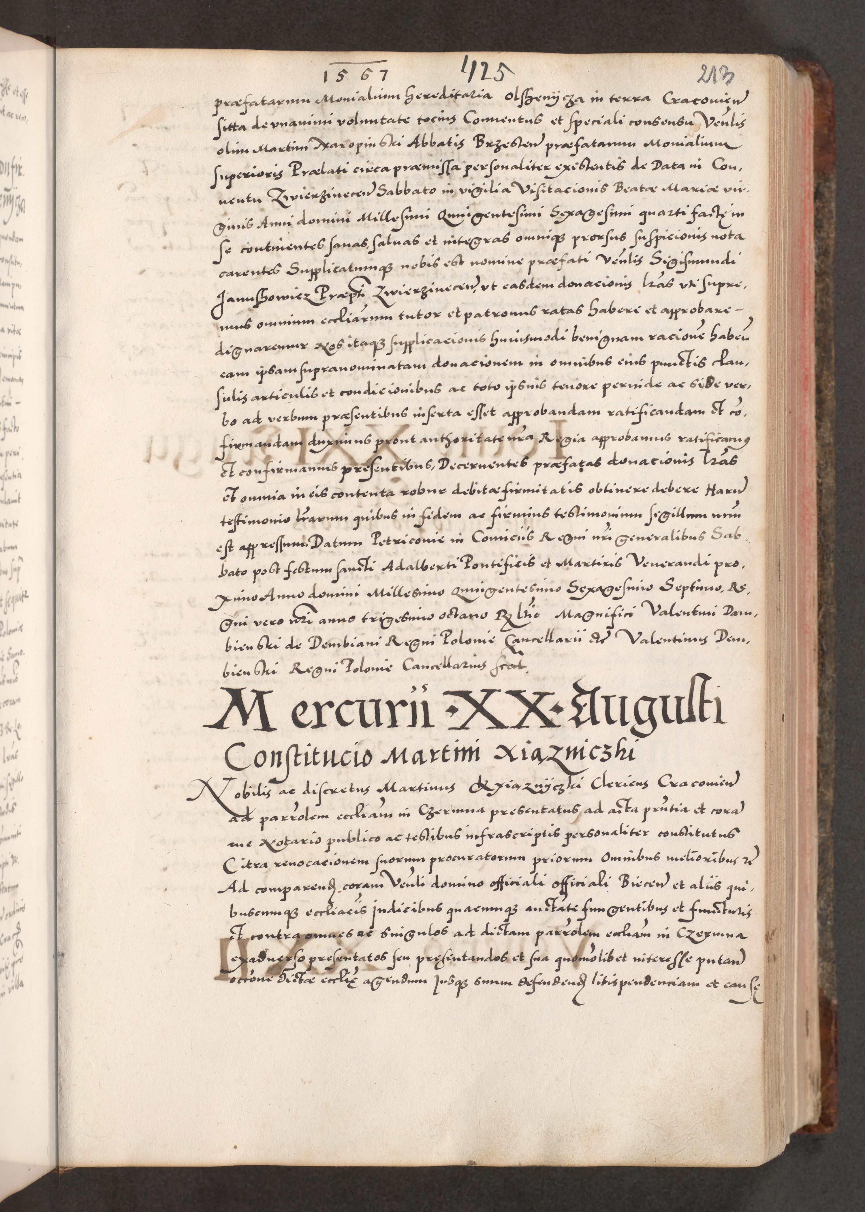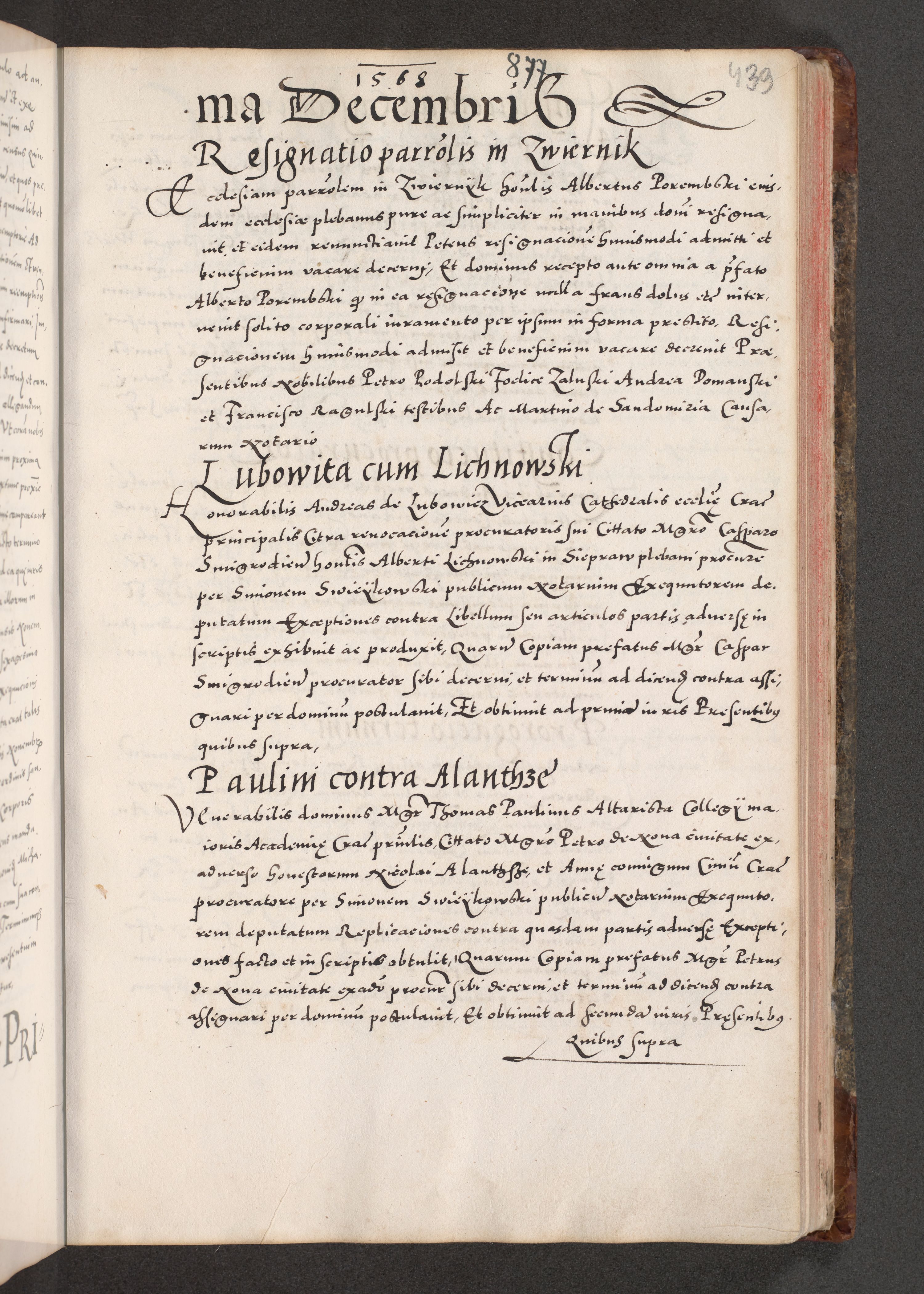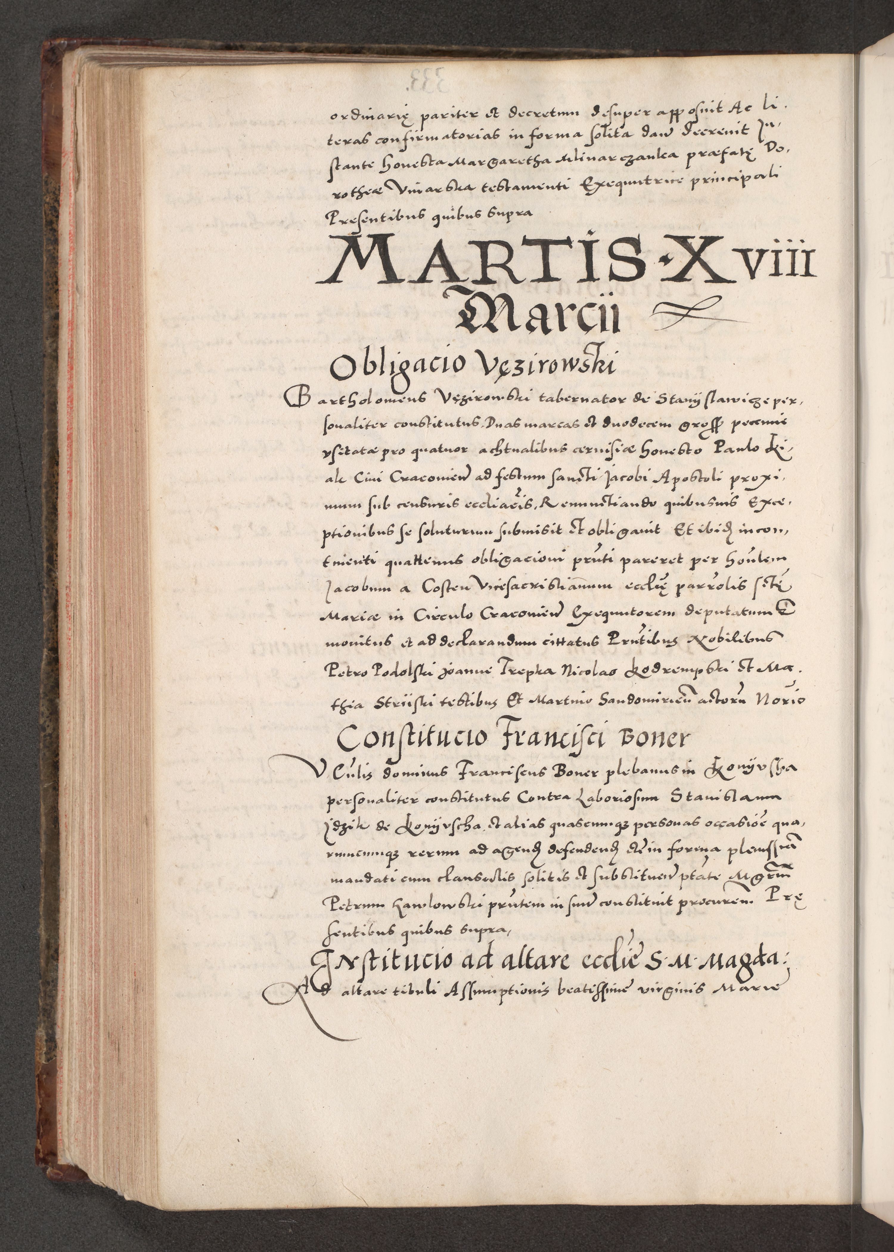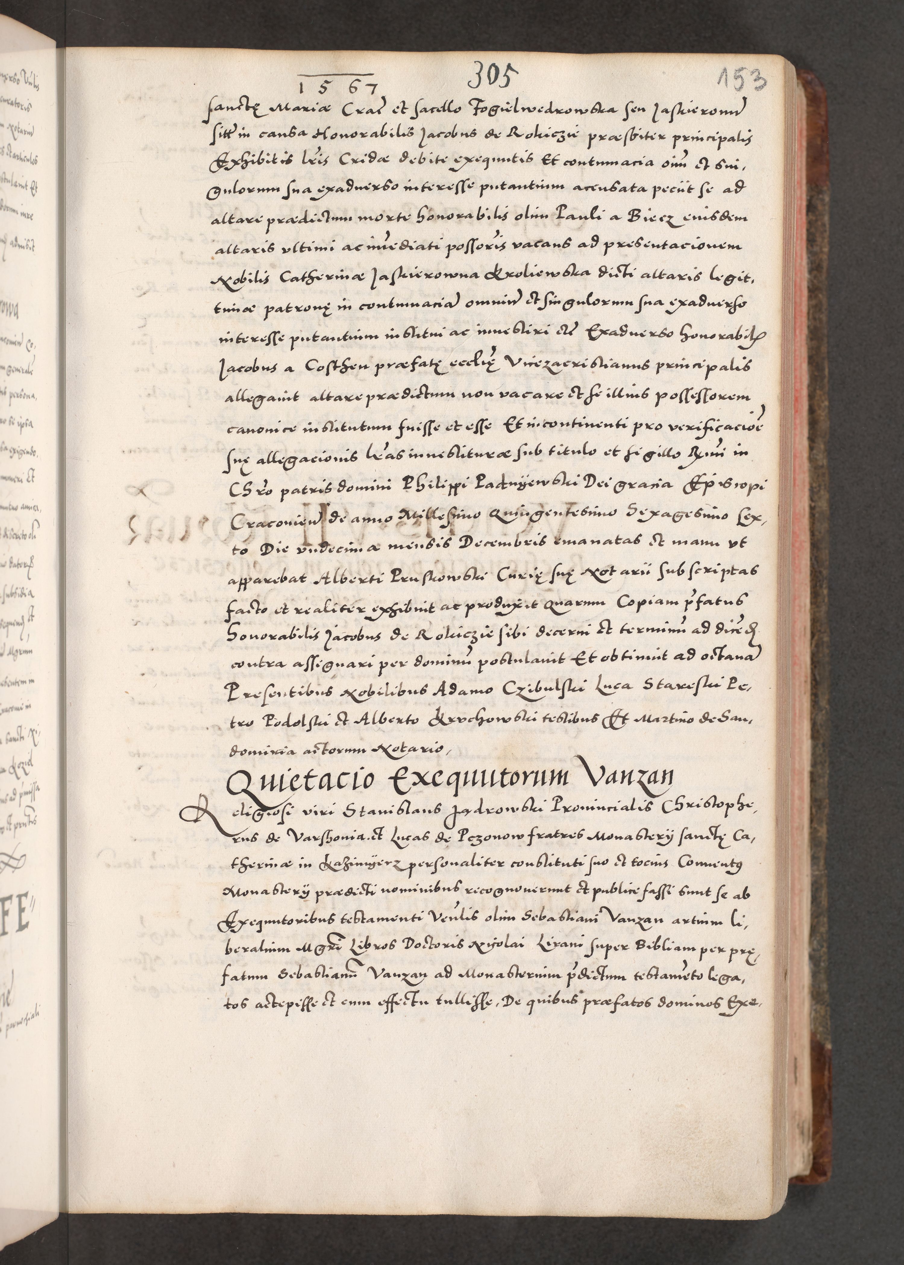 Acta actorum causarum, sententiarum tam diffinitivarum quam interloquutoriarum, decretorum, obligationum, quietationum, constitutionum procuratorum etc. coram reverendo domino Martino Izdbienski de Russiecz archidiacono Posnaniensi, custode et in spiritualibus vicario generali Cracoviensi, ad annum Domini millesimum quingesimum sexagesimum quintum, cuius indictio octava, pontificatus Pii pape, annus sextus, continuantur