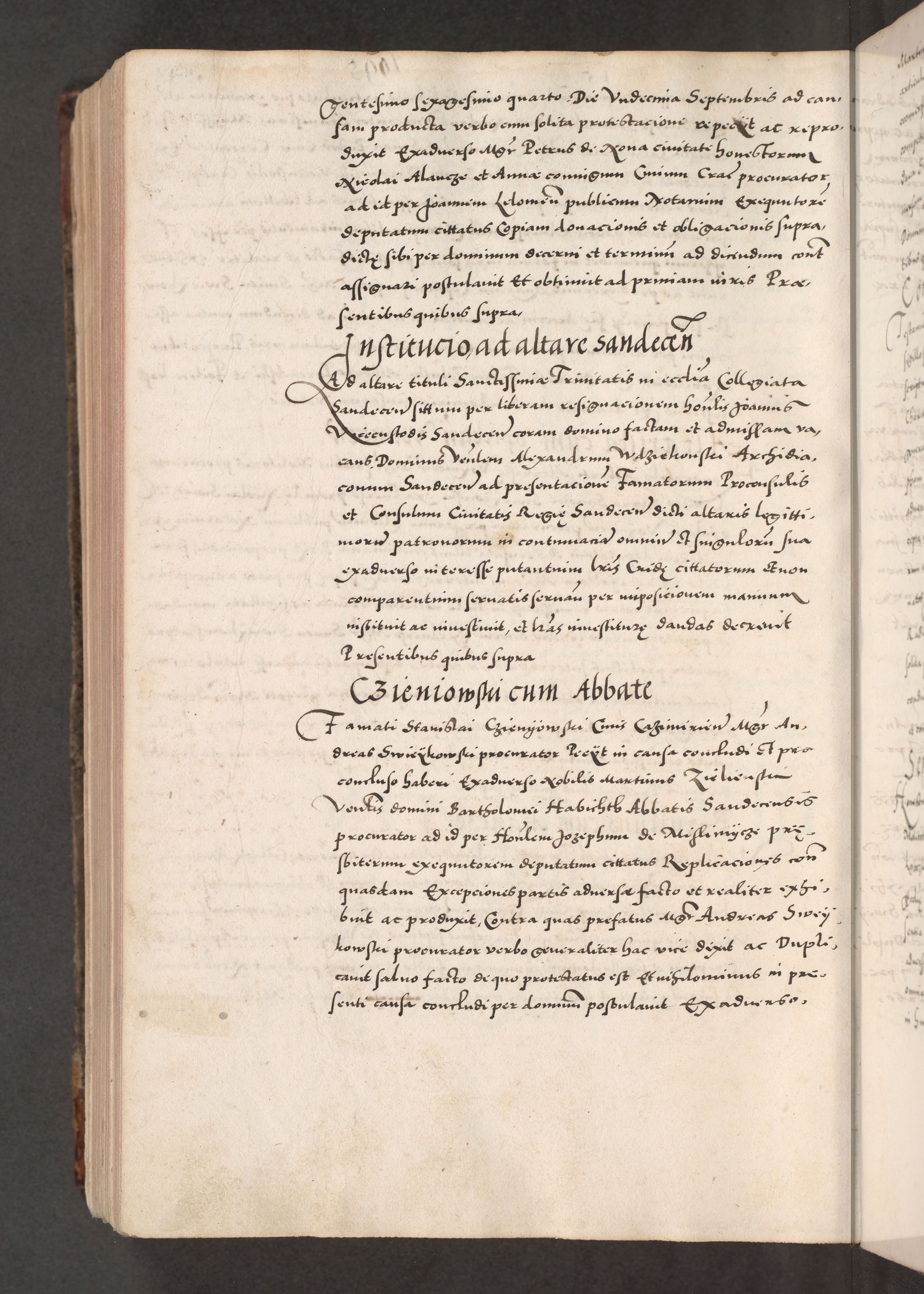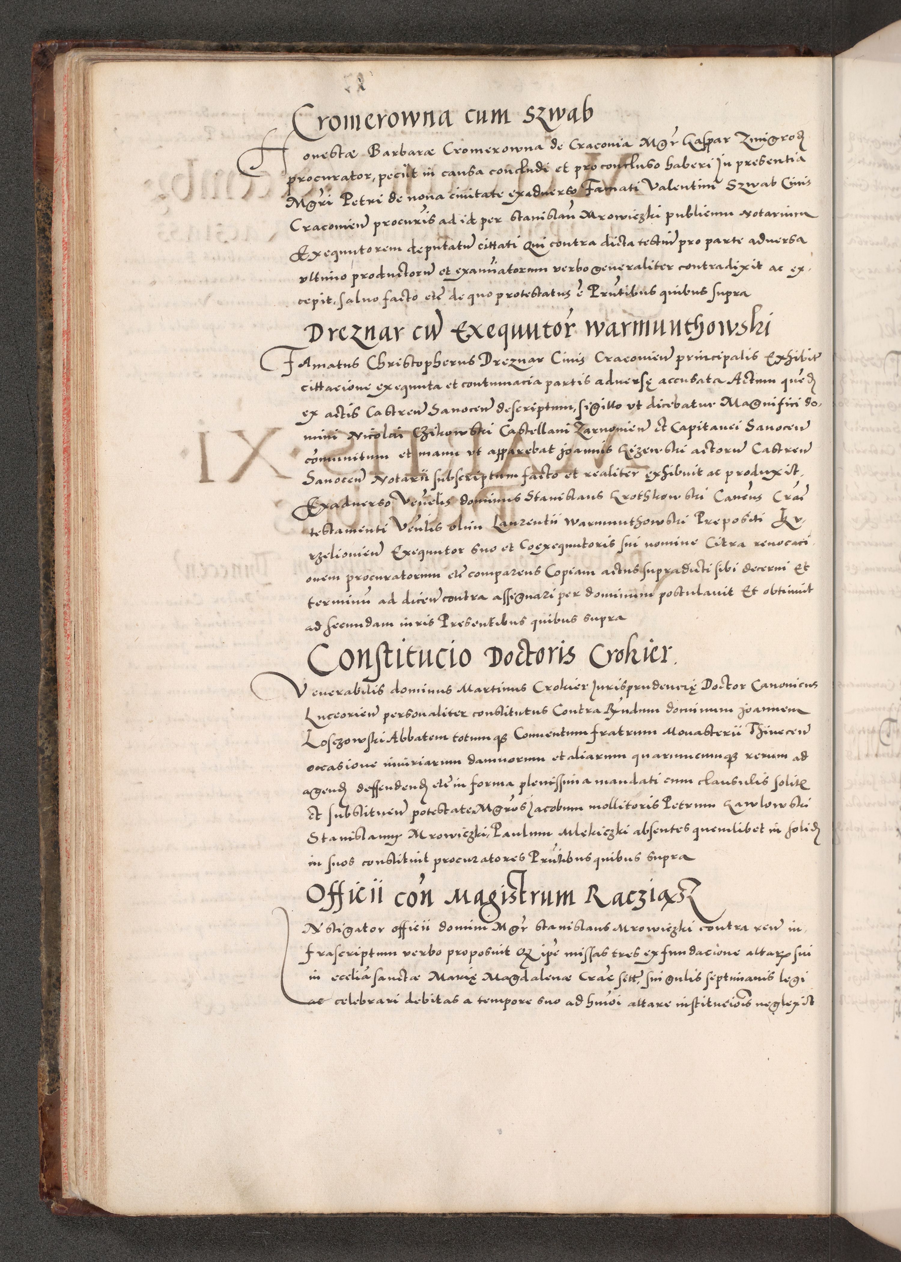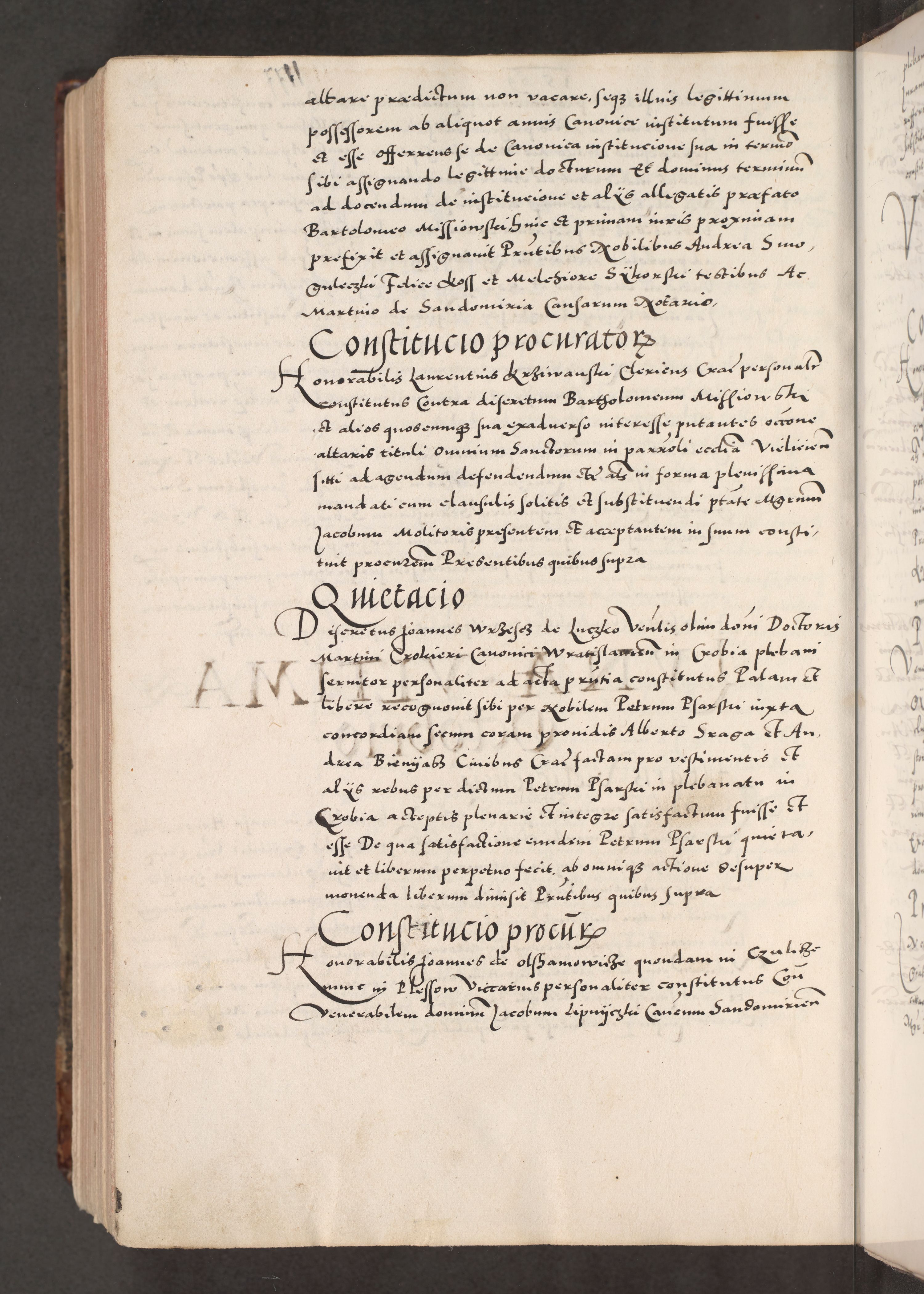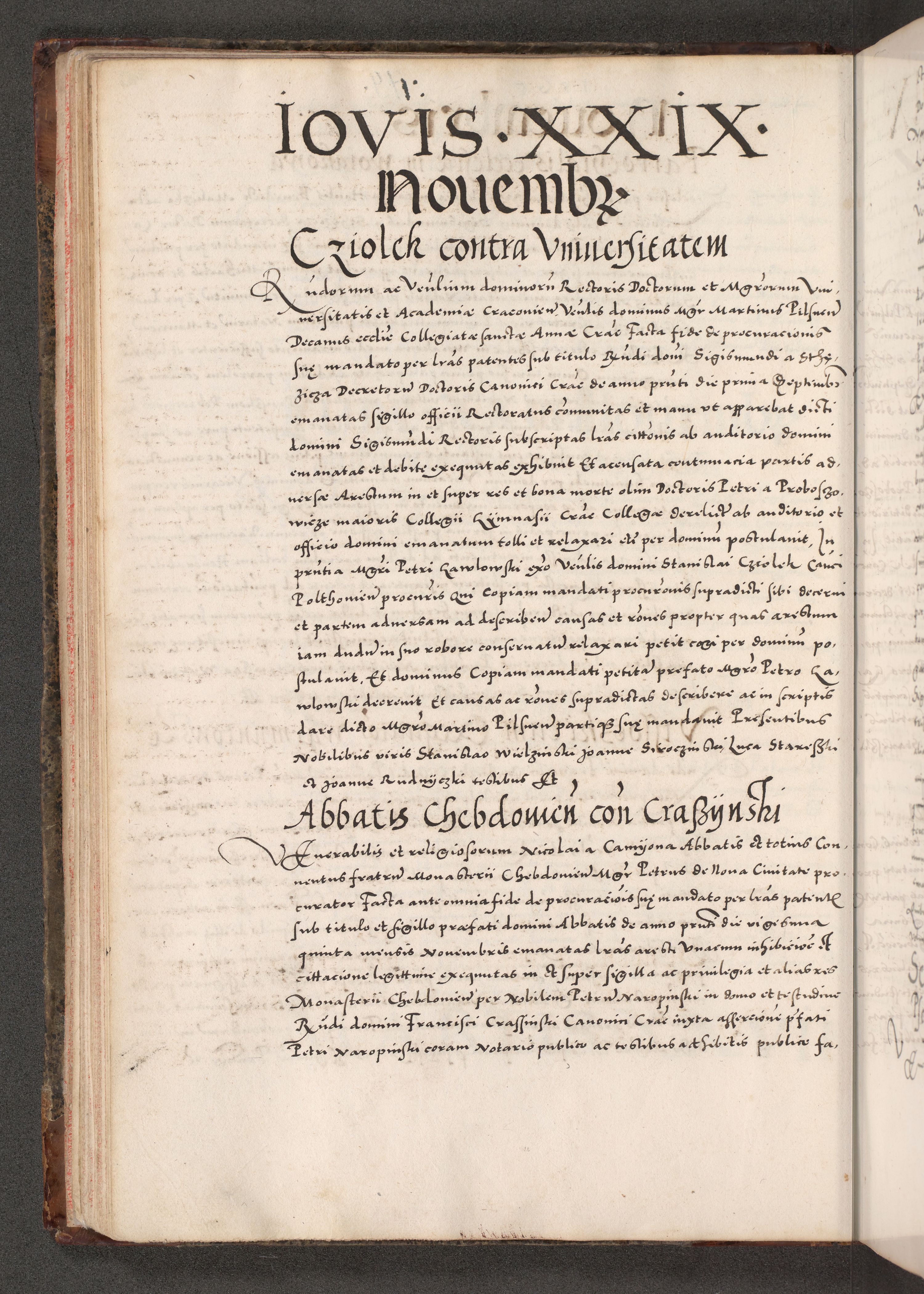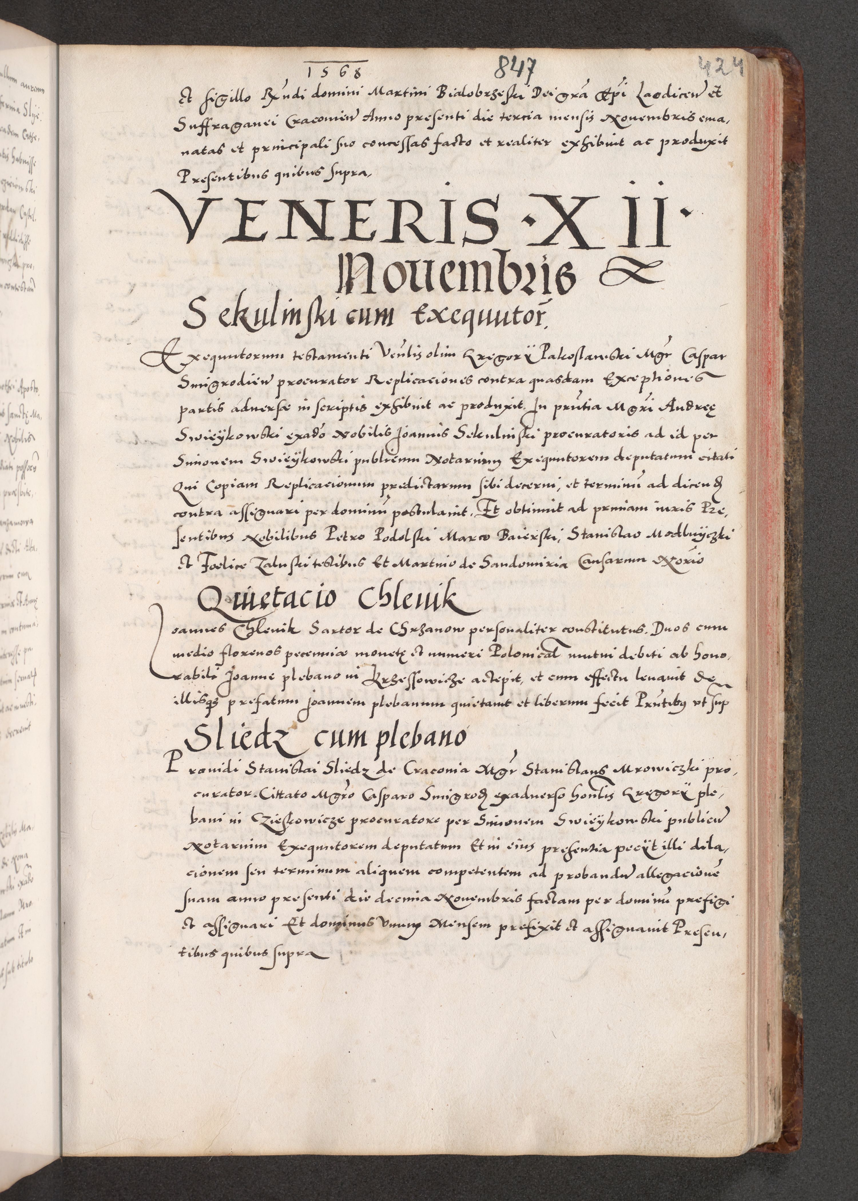 Acta actorum causarum, sententiarum tam diffinitivarum quam interloquutoriarum, decretorum, obligationum, quietationum, constitutionum procuratorum etc. coram reverendo domino Martino Izdbienski de Russiecz archidiacono Posnaniensi, custode et in spiritualibus vicario generali Cracoviensi, ad annum Domini millesimum quingesimum sexagesimum quintum, cuius indictio octava, pontificatus Pii pape, annus sextus, continuantur