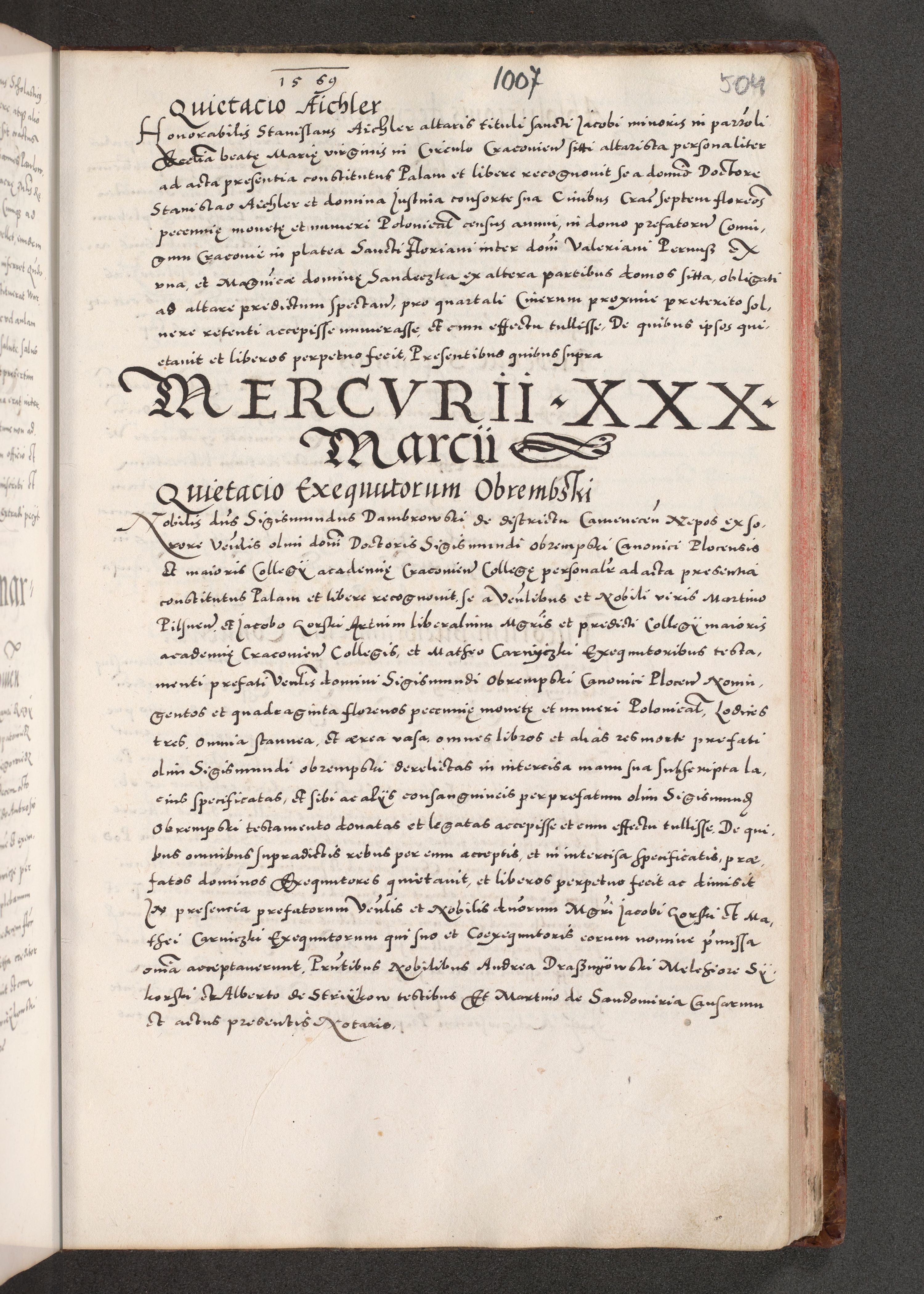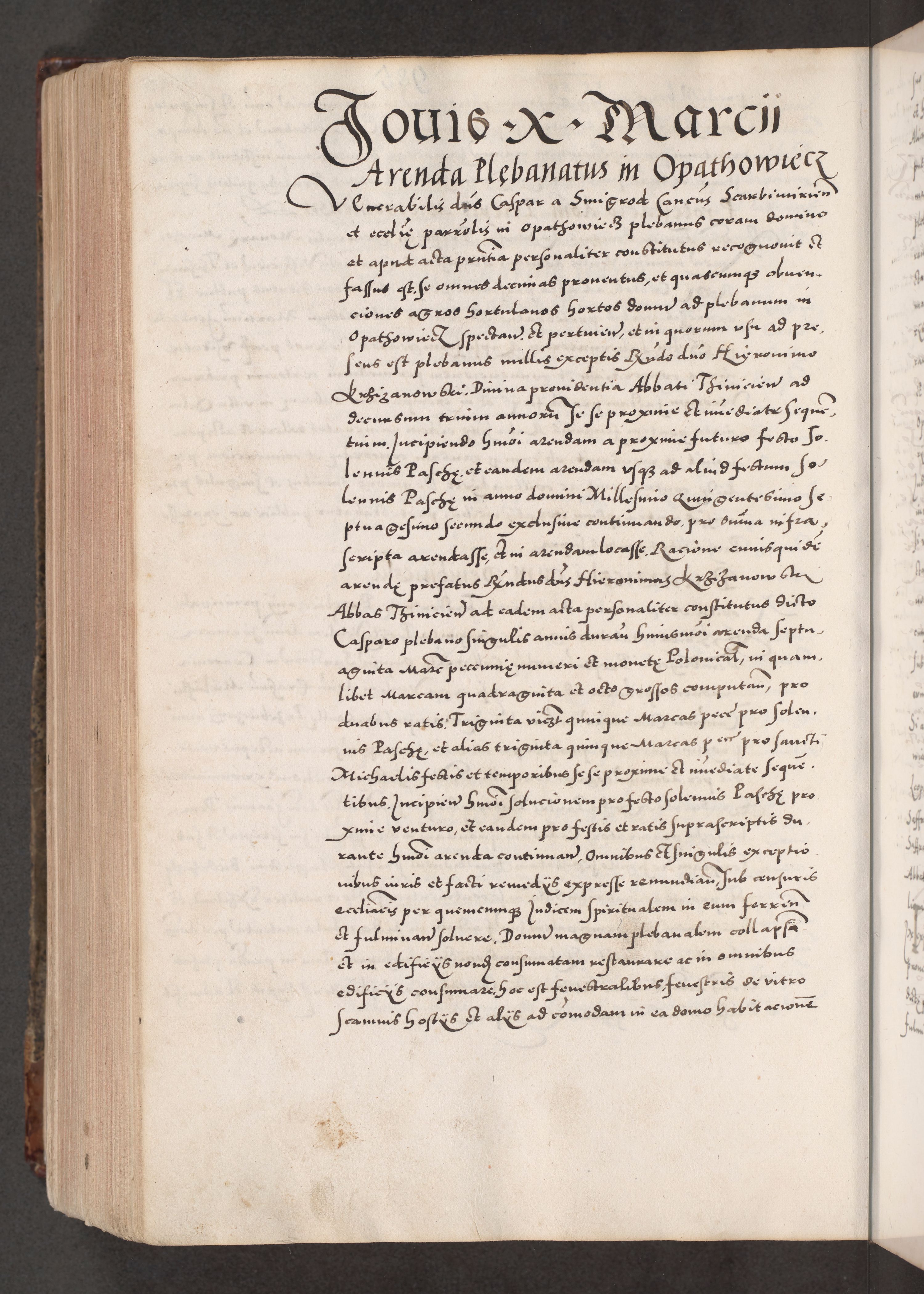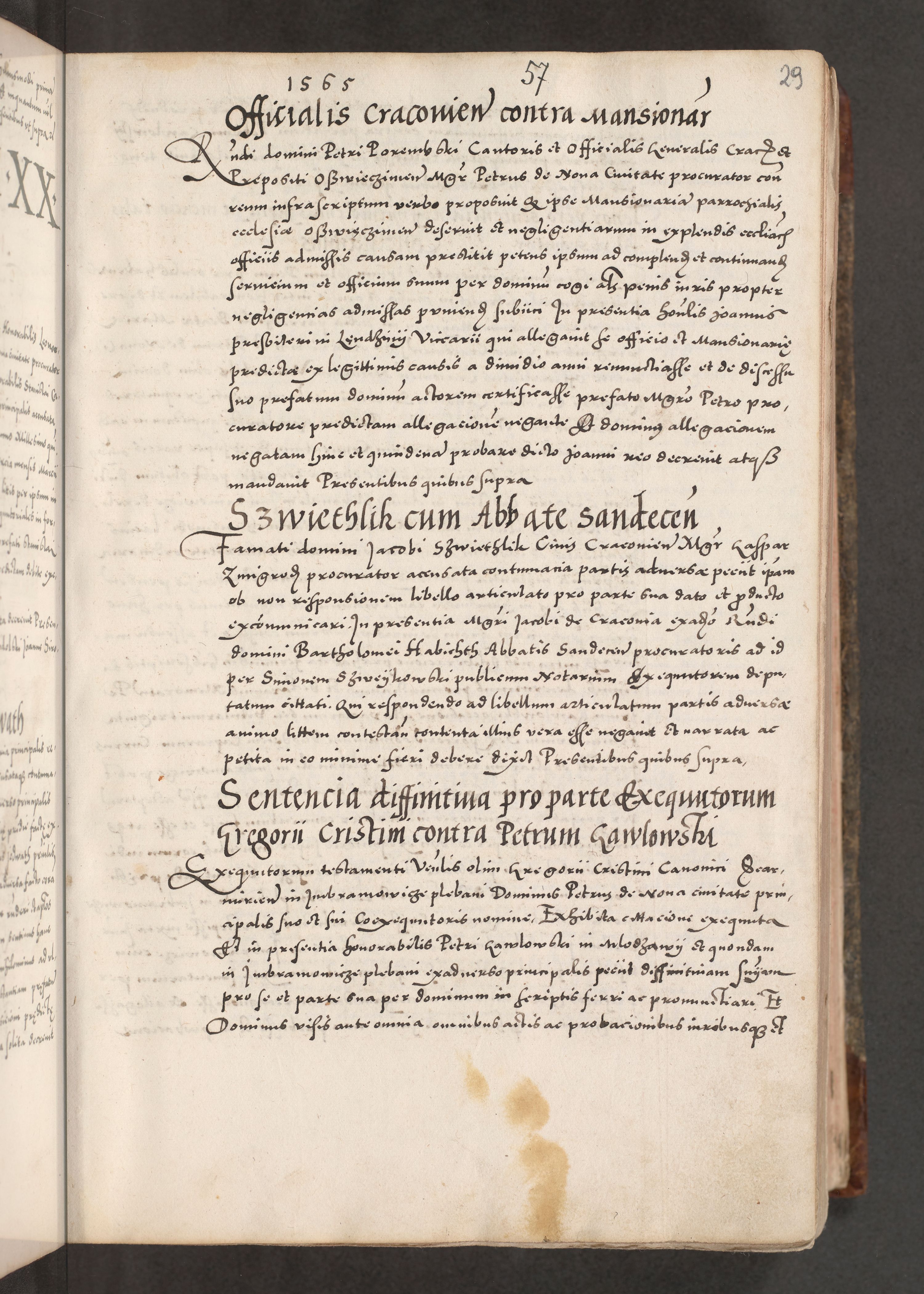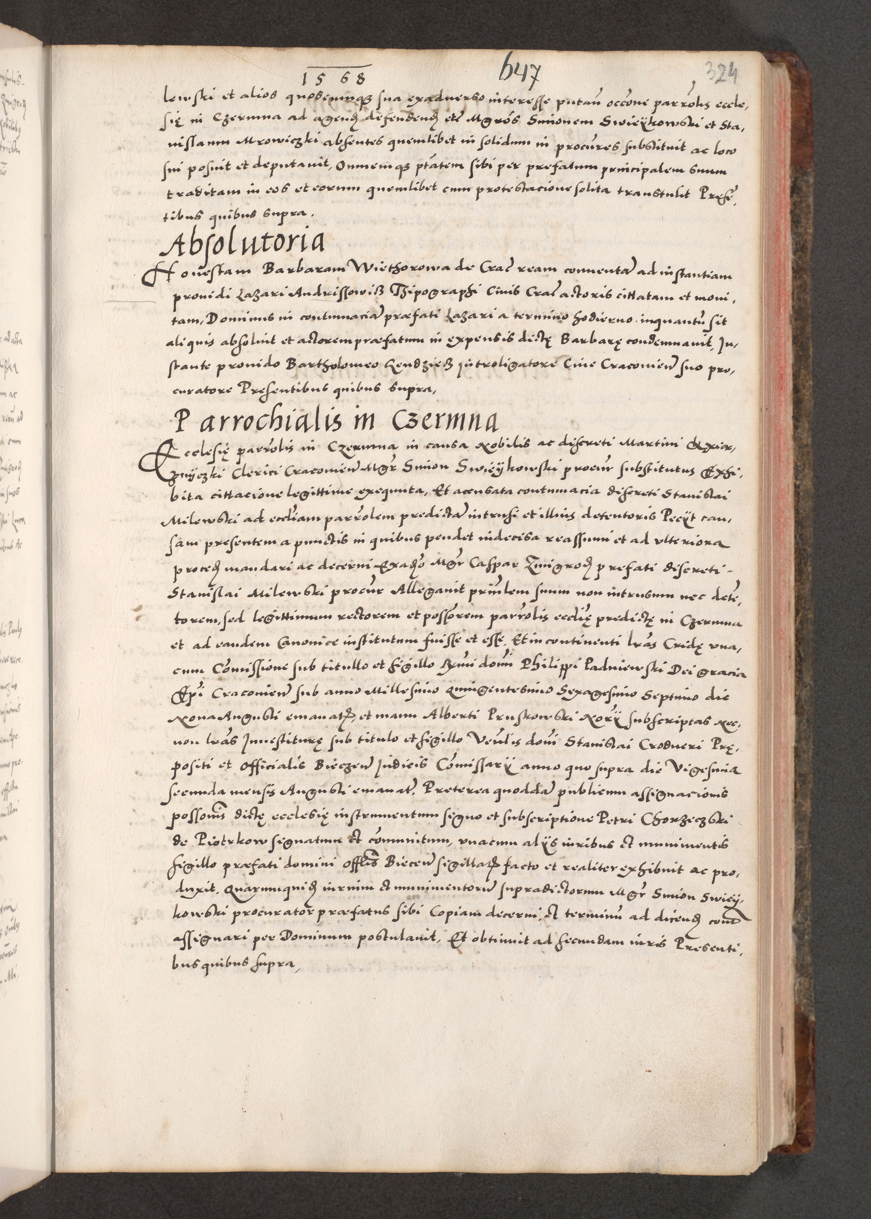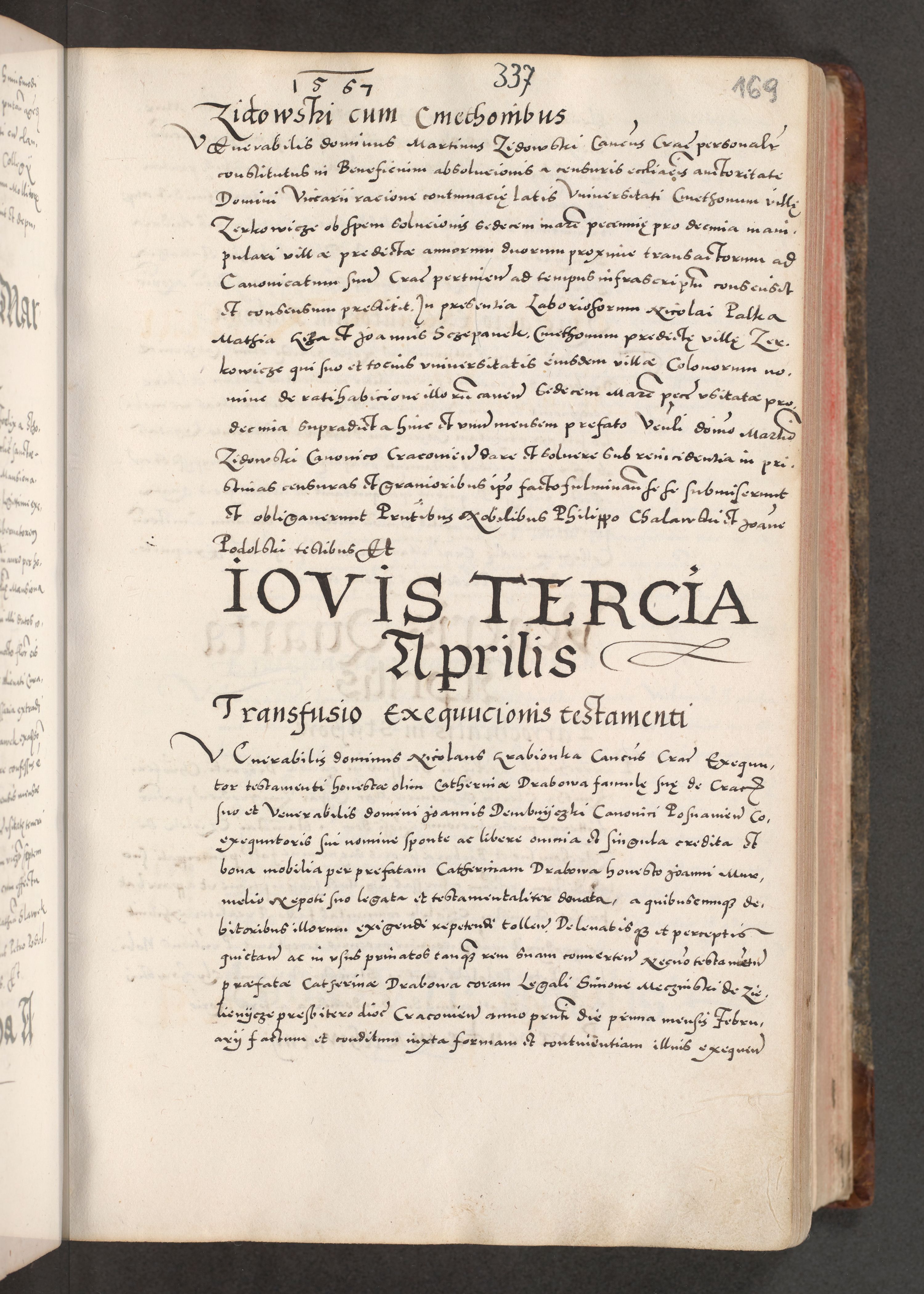 Acta actorum causarum, sententiarum tam diffinitivarum quam interloquutoriarum, decretorum, obligationum, quietationum, constitutionum procuratorum etc. coram reverendo domino Martino Izdbienski de Russiecz archidiacono Posnaniensi, custode et in spiritualibus vicario generali Cracoviensi, ad annum Domini millesimum quingesimum sexagesimum quintum, cuius indictio octava, pontificatus Pii pape, annus sextus, continuantur