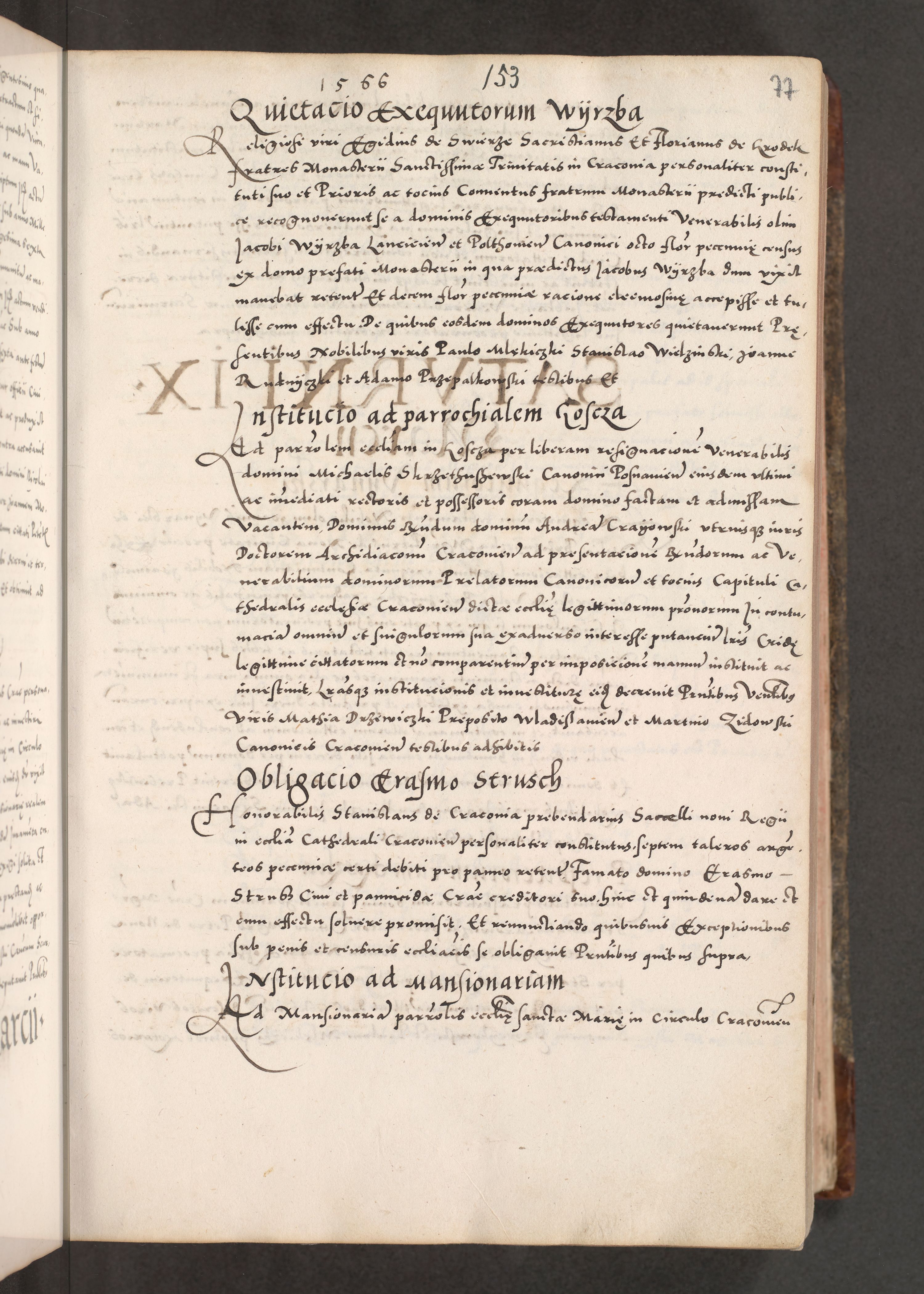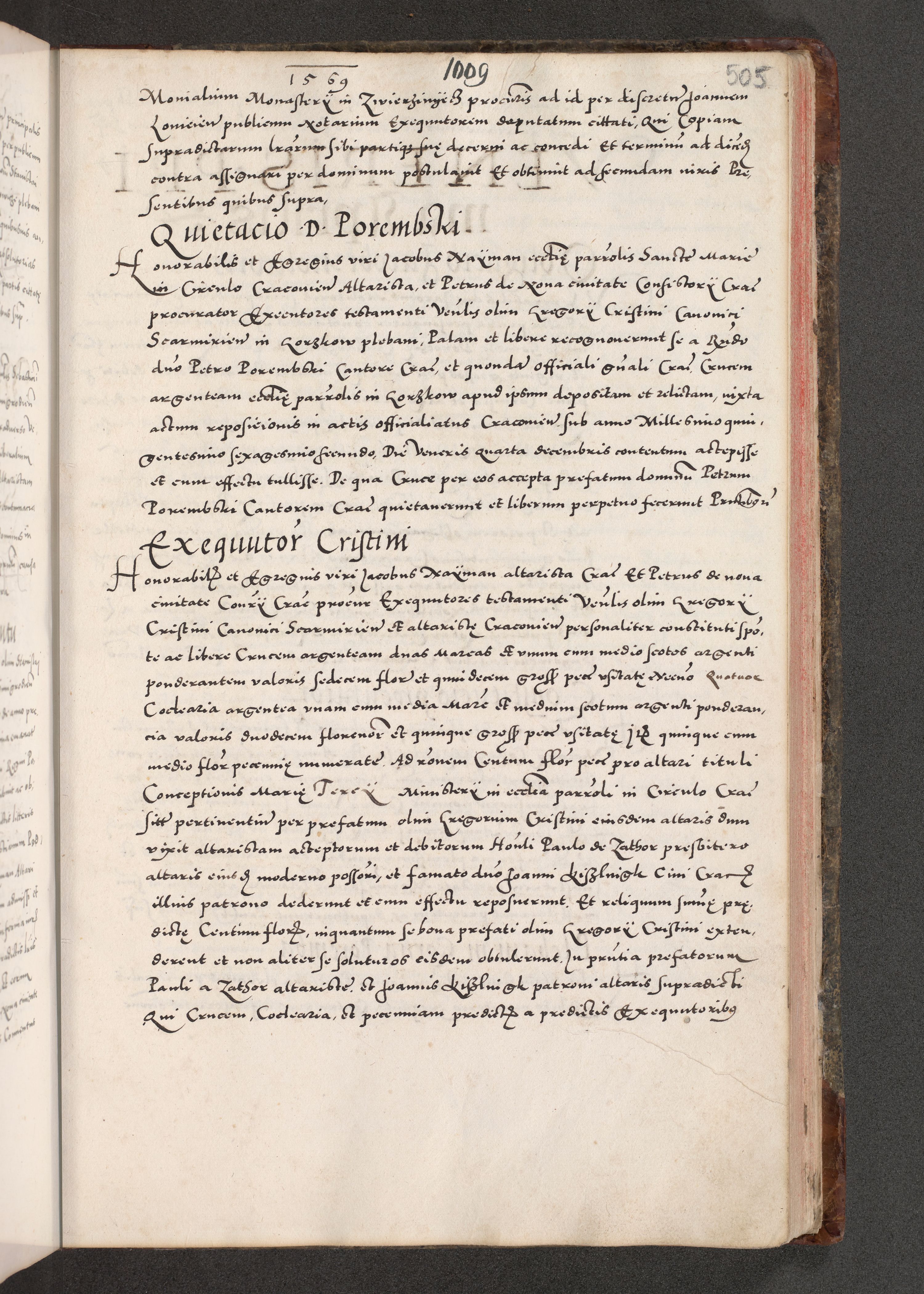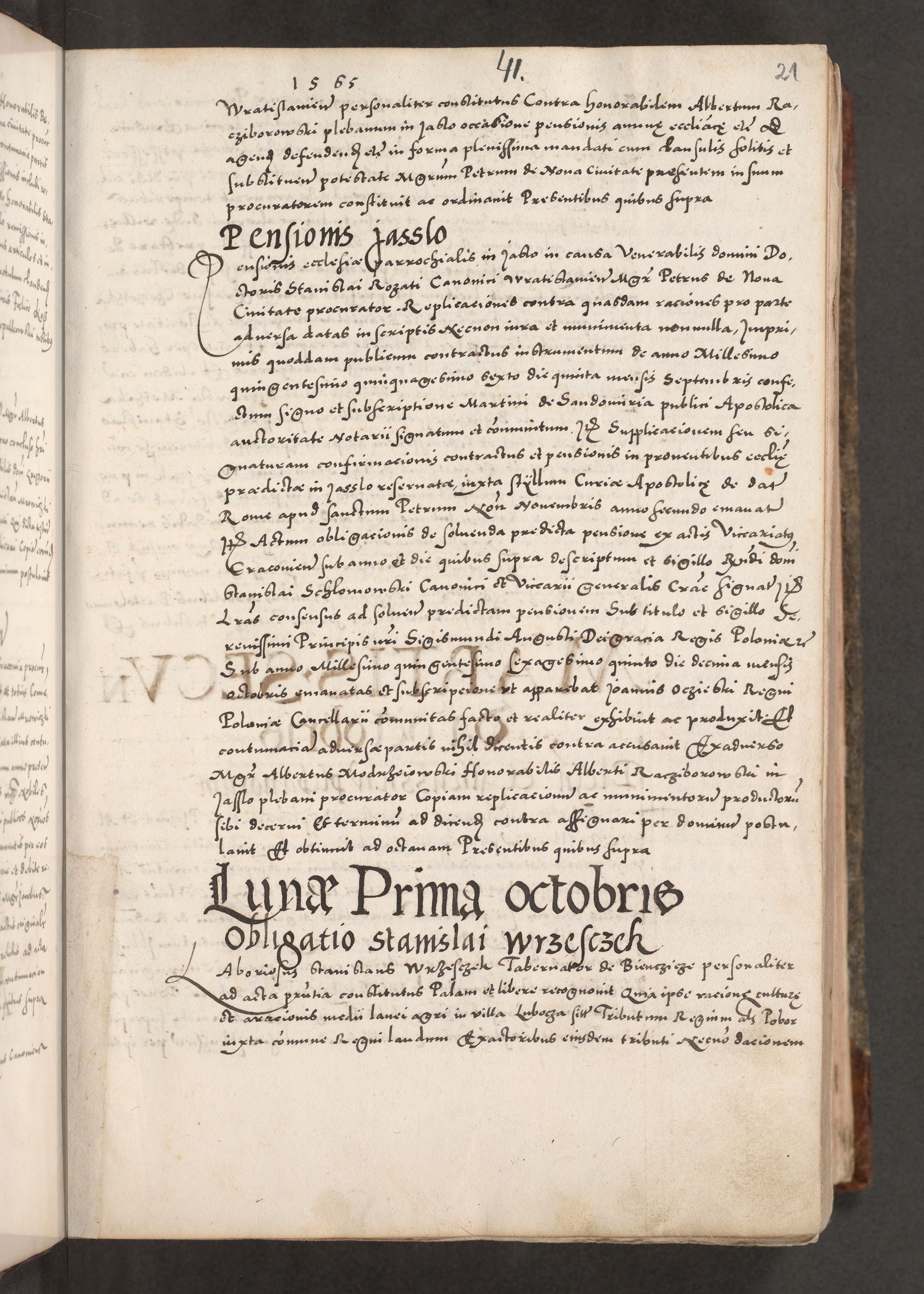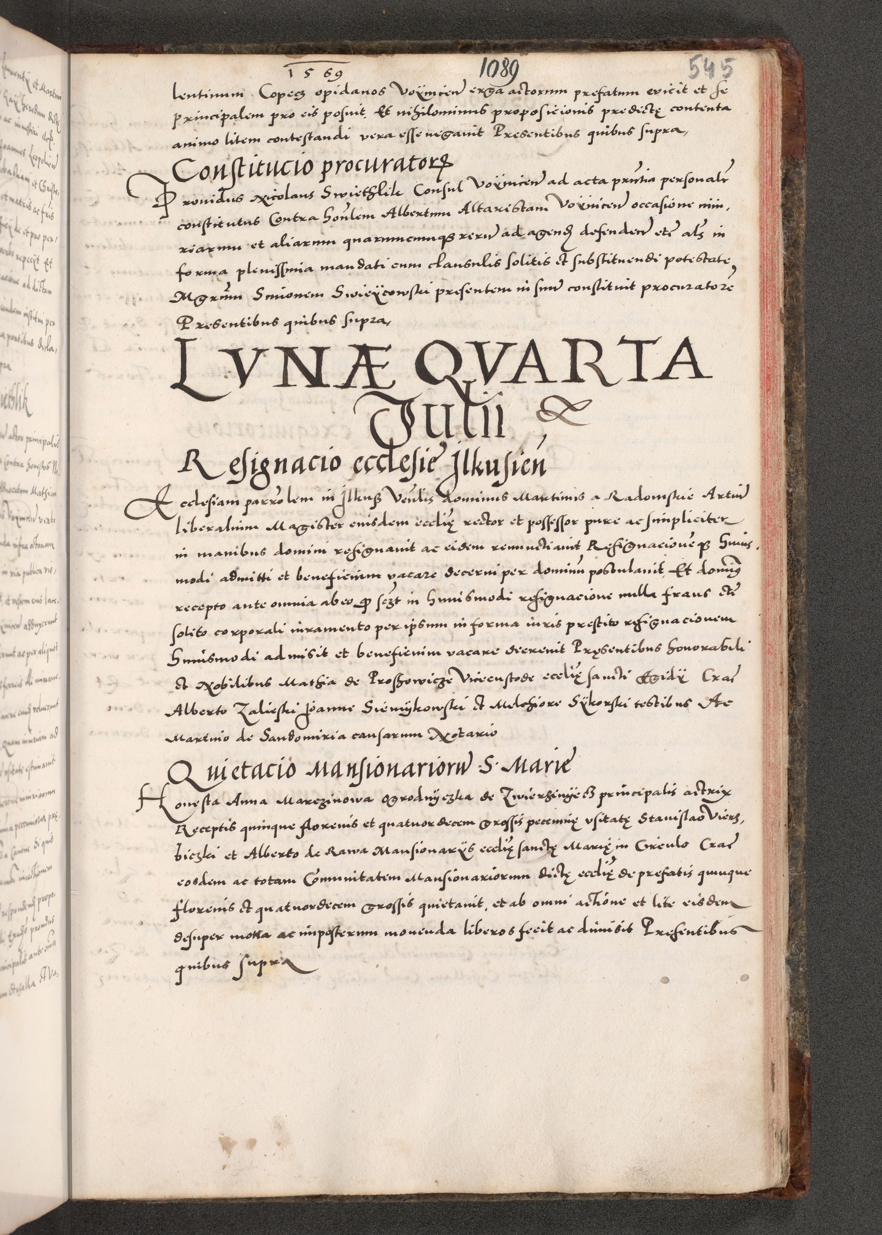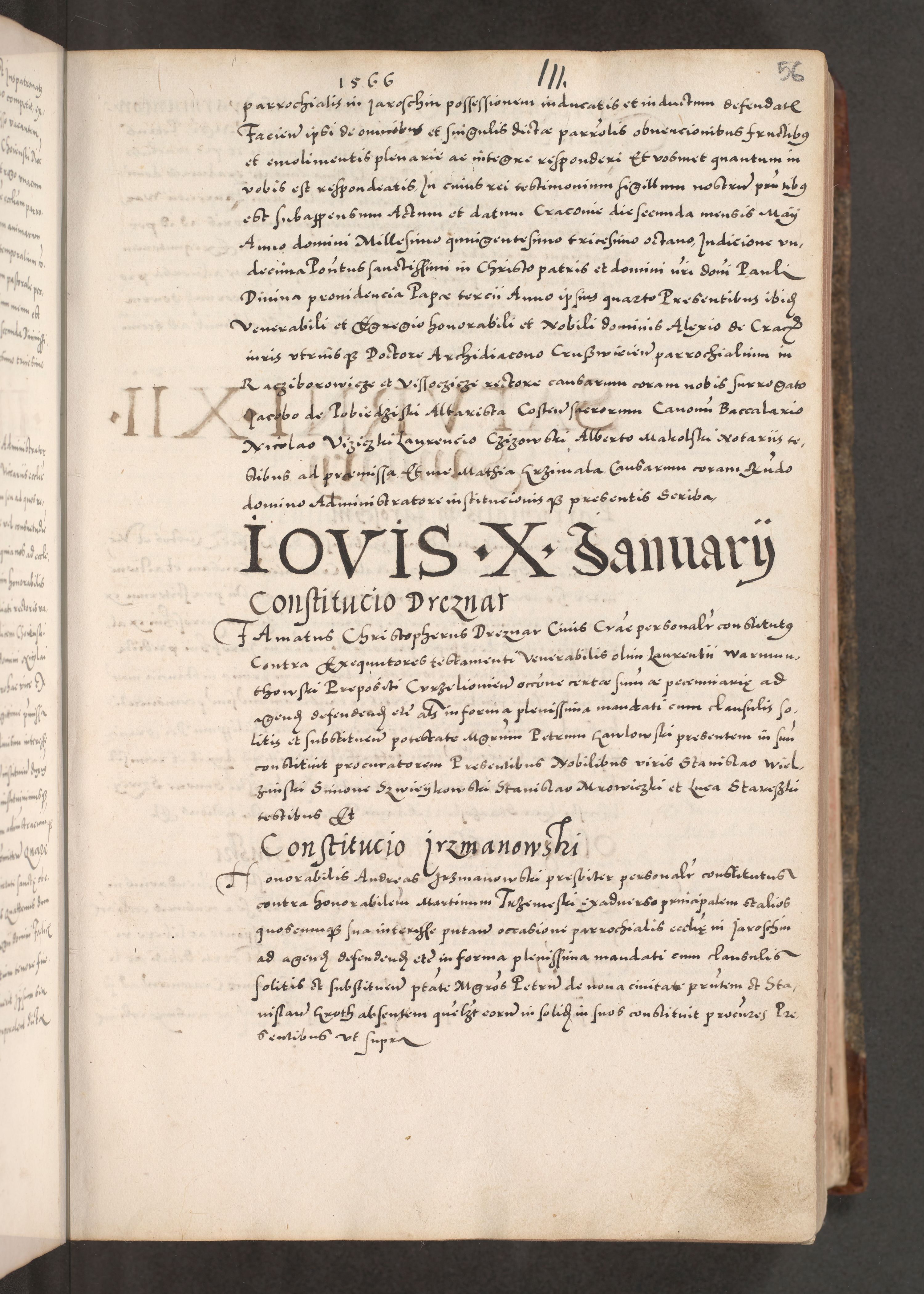 Acta actorum causarum, sententiarum tam diffinitivarum quam interloquutoriarum, decretorum, obligationum, quietationum, constitutionum procuratorum etc. coram reverendo domino Martino Izdbienski de Russiecz archidiacono Posnaniensi, custode et in spiritualibus vicario generali Cracoviensi, ad annum Domini millesimum quingesimum sexagesimum quintum, cuius indictio octava, pontificatus Pii pape, annus sextus, continuantur