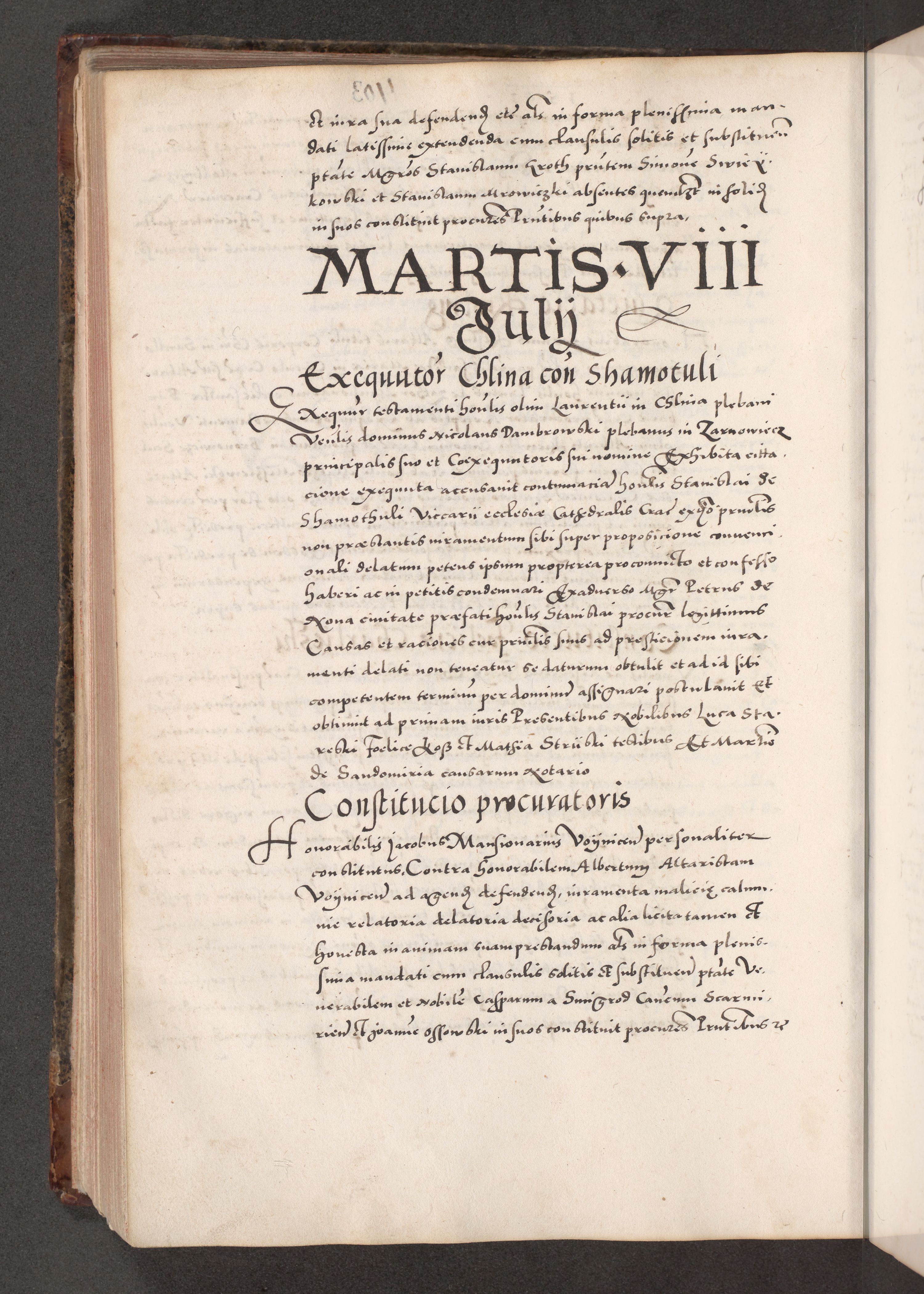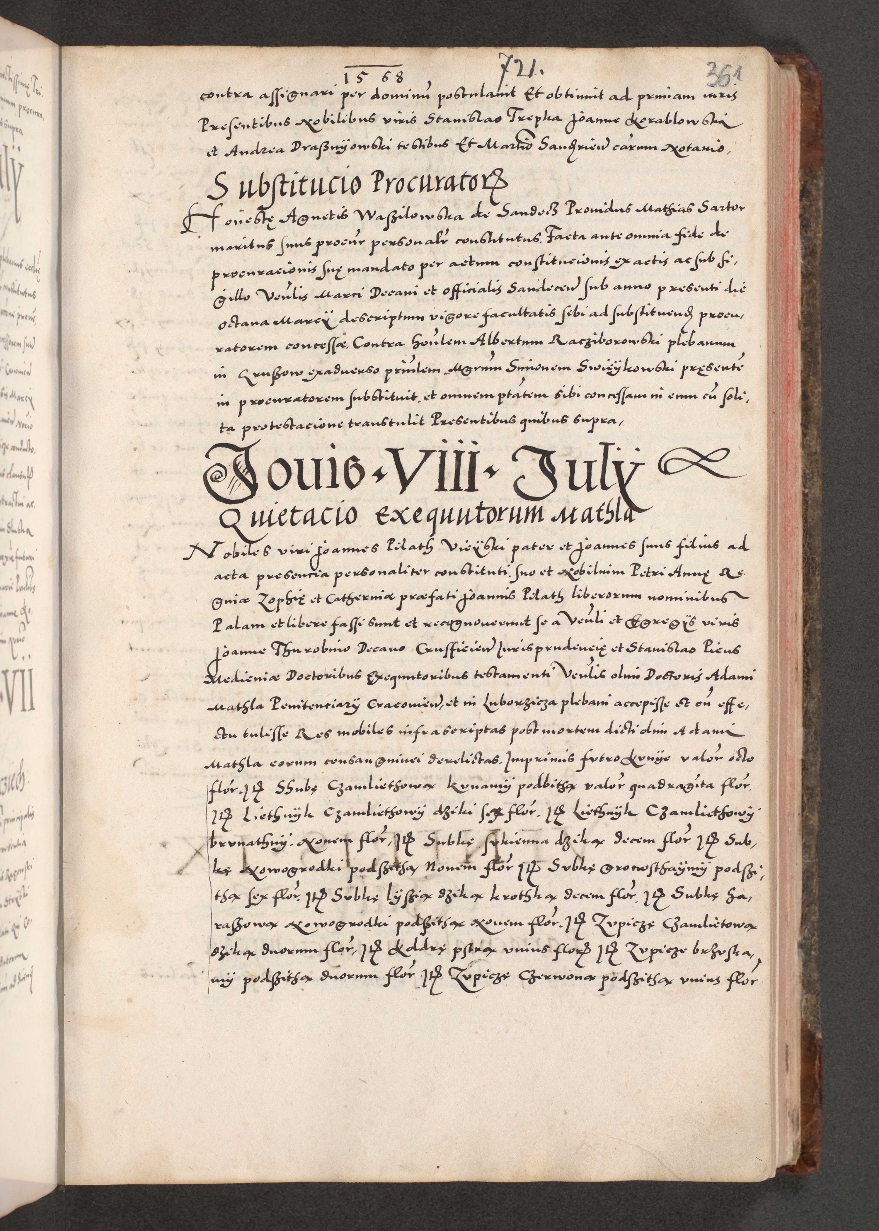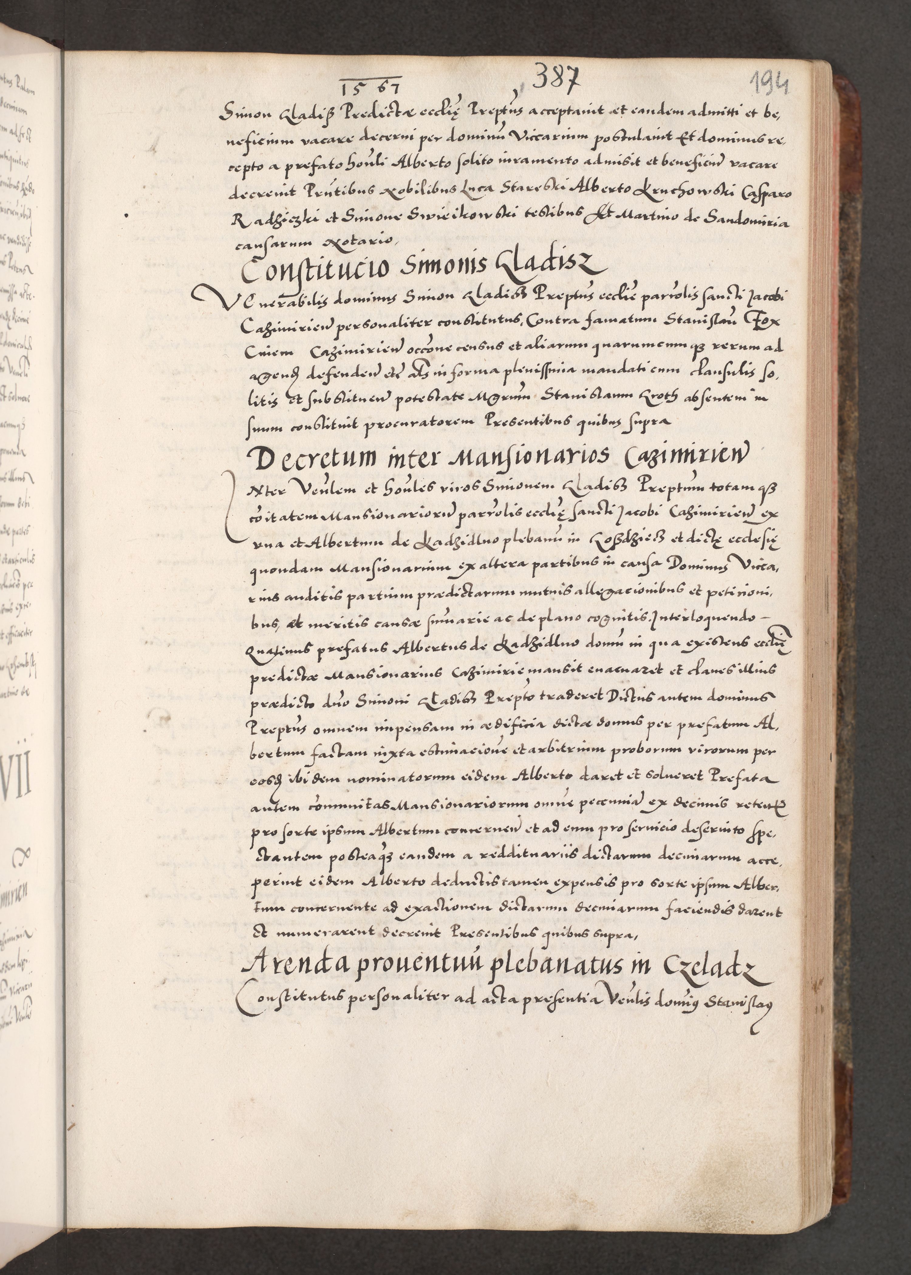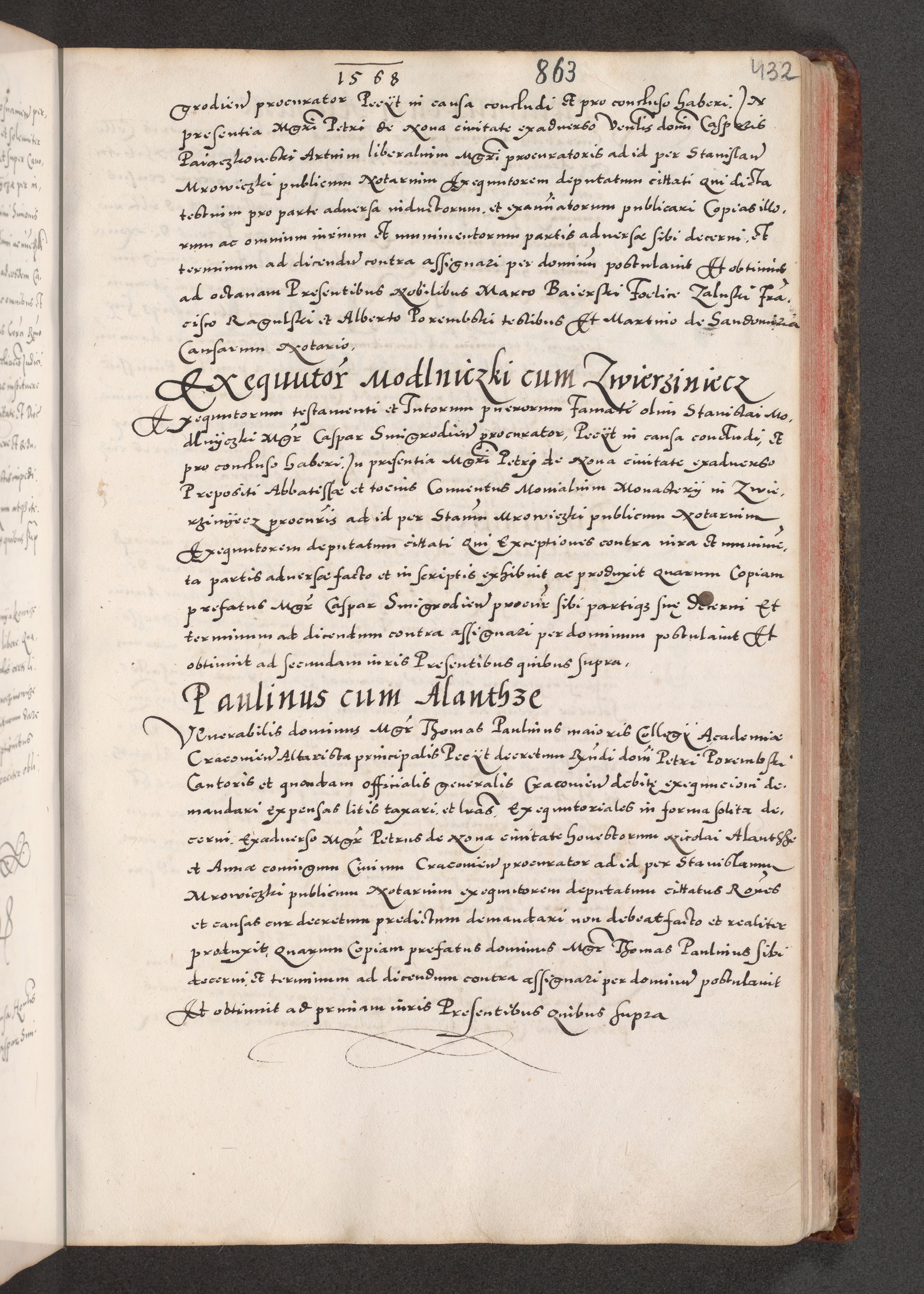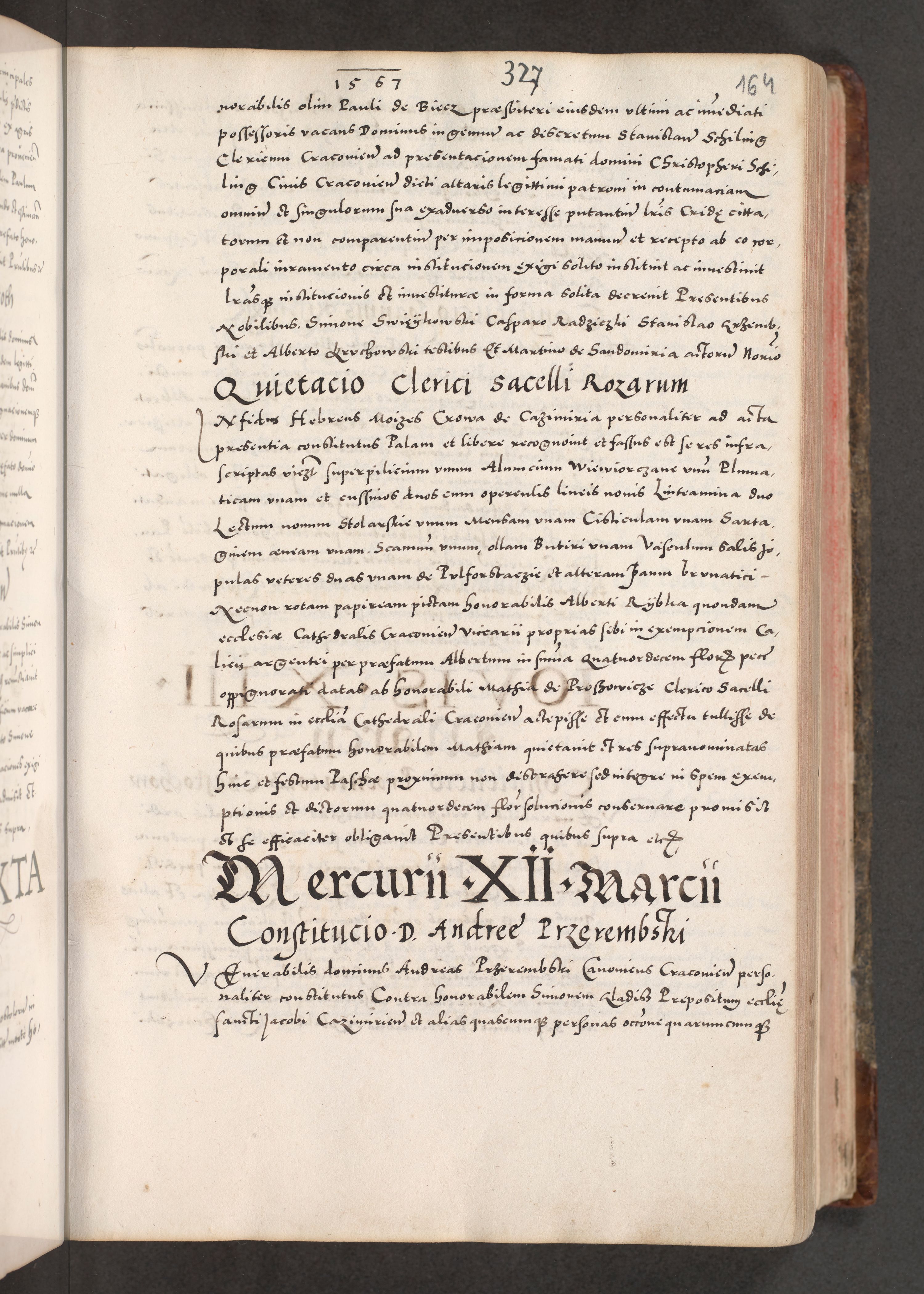 Acta actorum causarum, sententiarum tam diffinitivarum quam interloquutoriarum, decretorum, obligationum, quietationum, constitutionum procuratorum etc. coram reverendo domino Martino Izdbienski de Russiecz archidiacono Posnaniensi, custode et in spiritualibus vicario generali Cracoviensi, ad annum Domini millesimum quingesimum sexagesimum quintum, cuius indictio octava, pontificatus Pii pape, annus sextus, continuantur