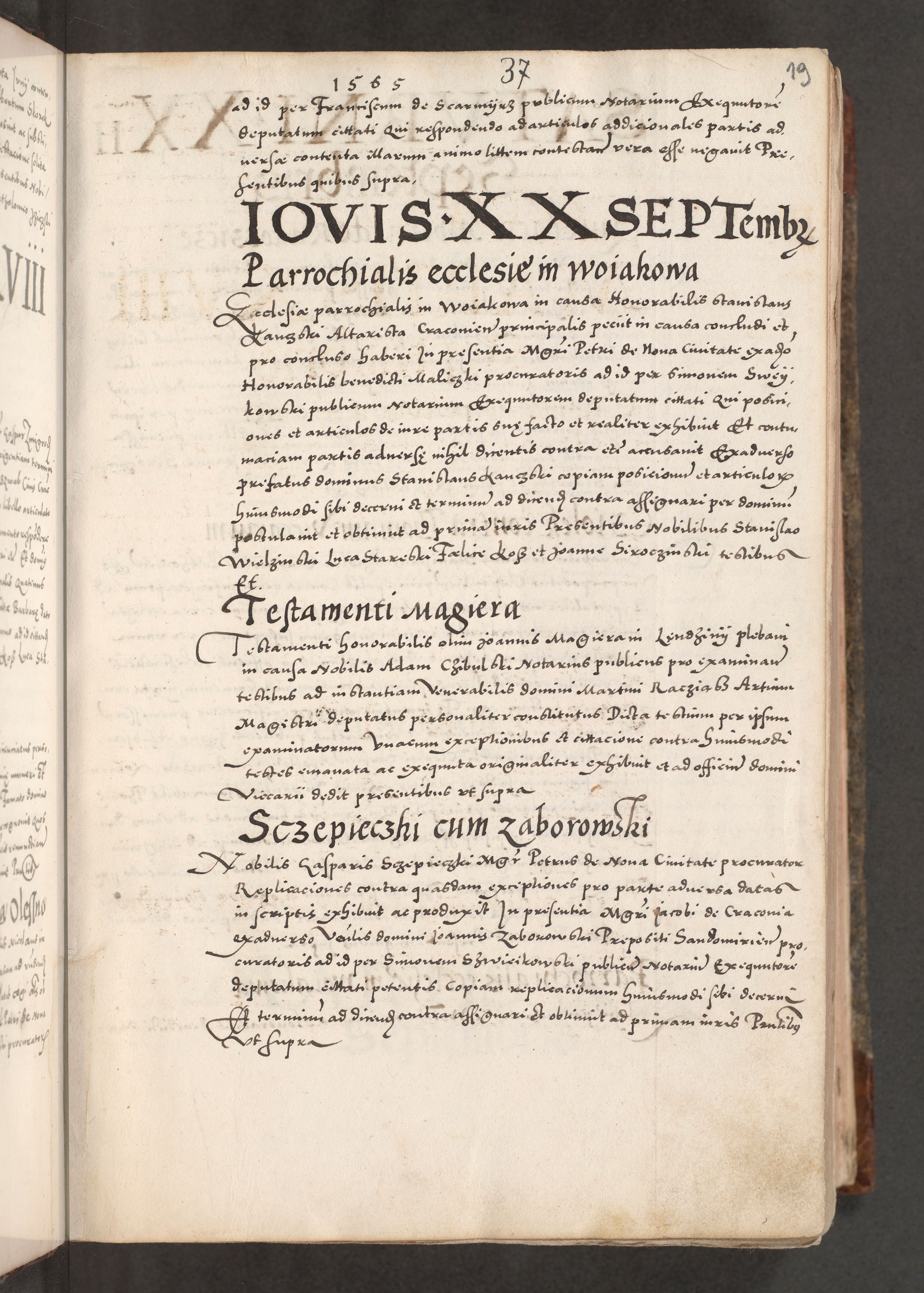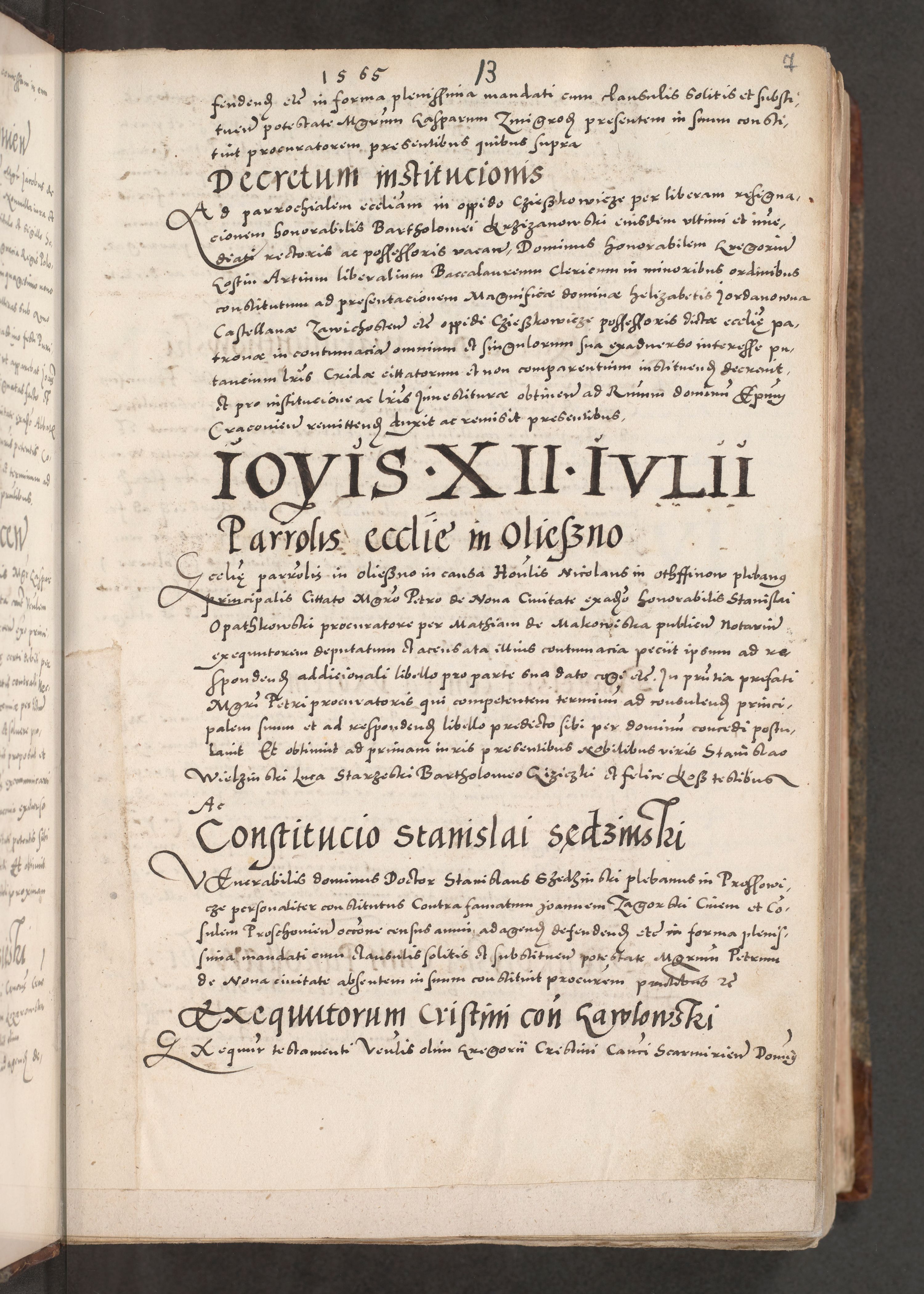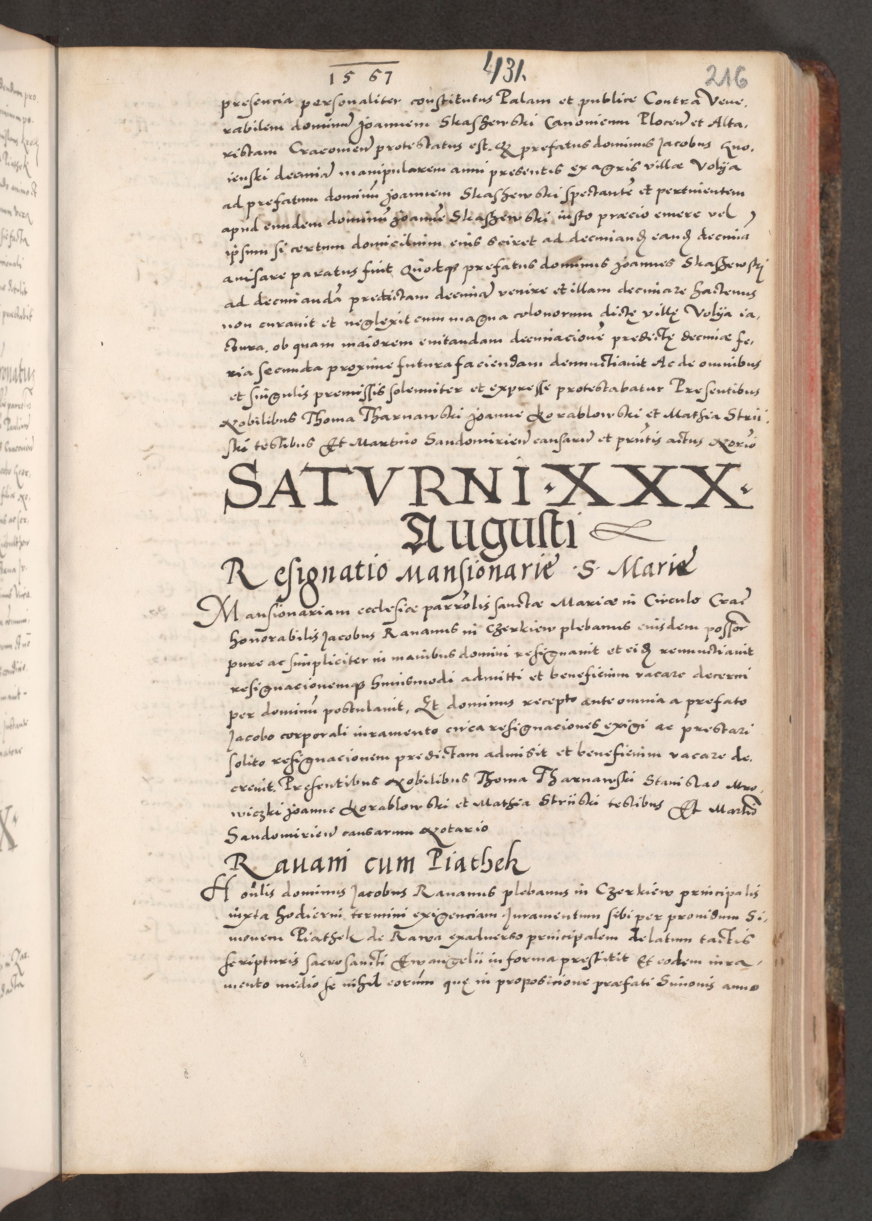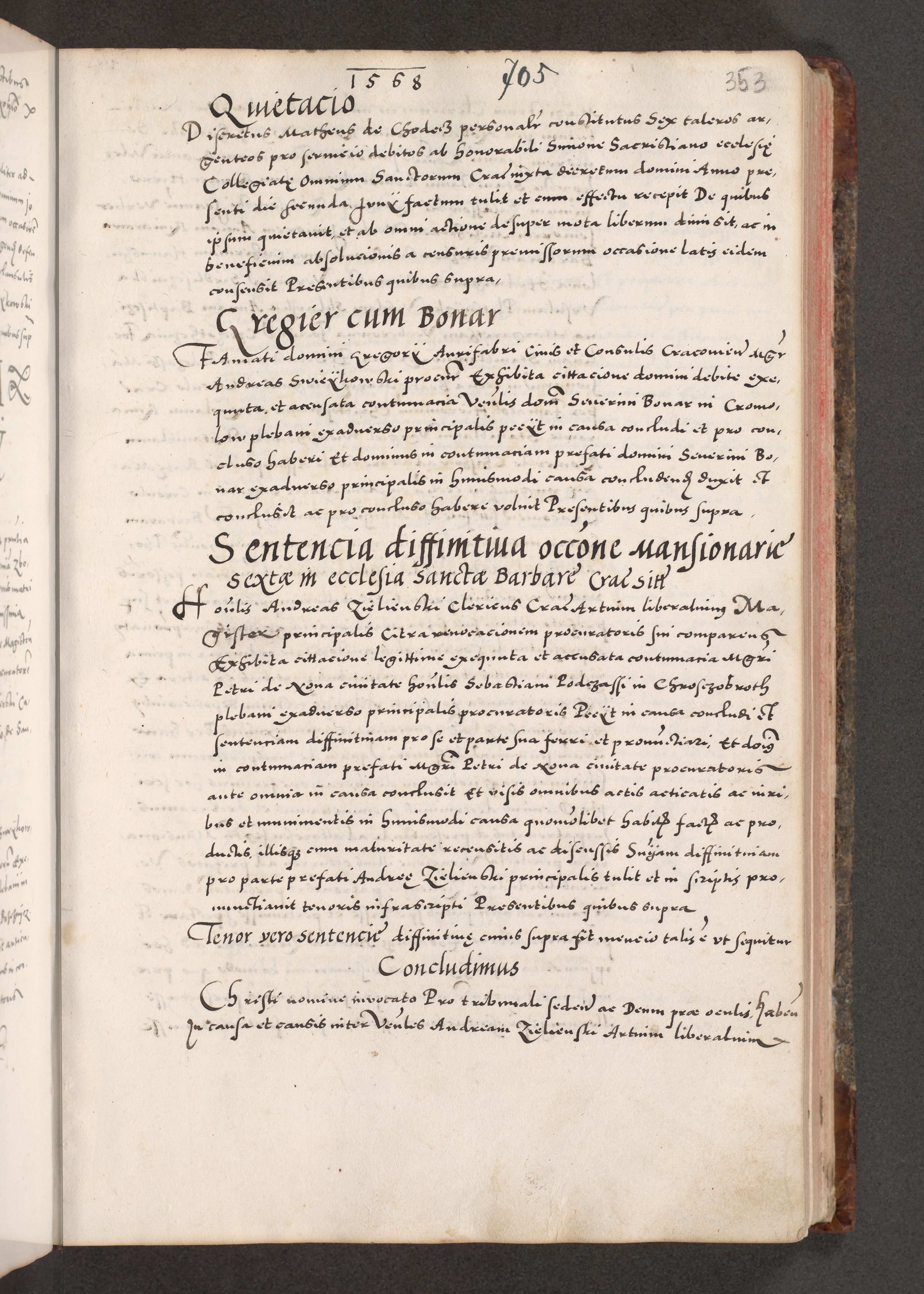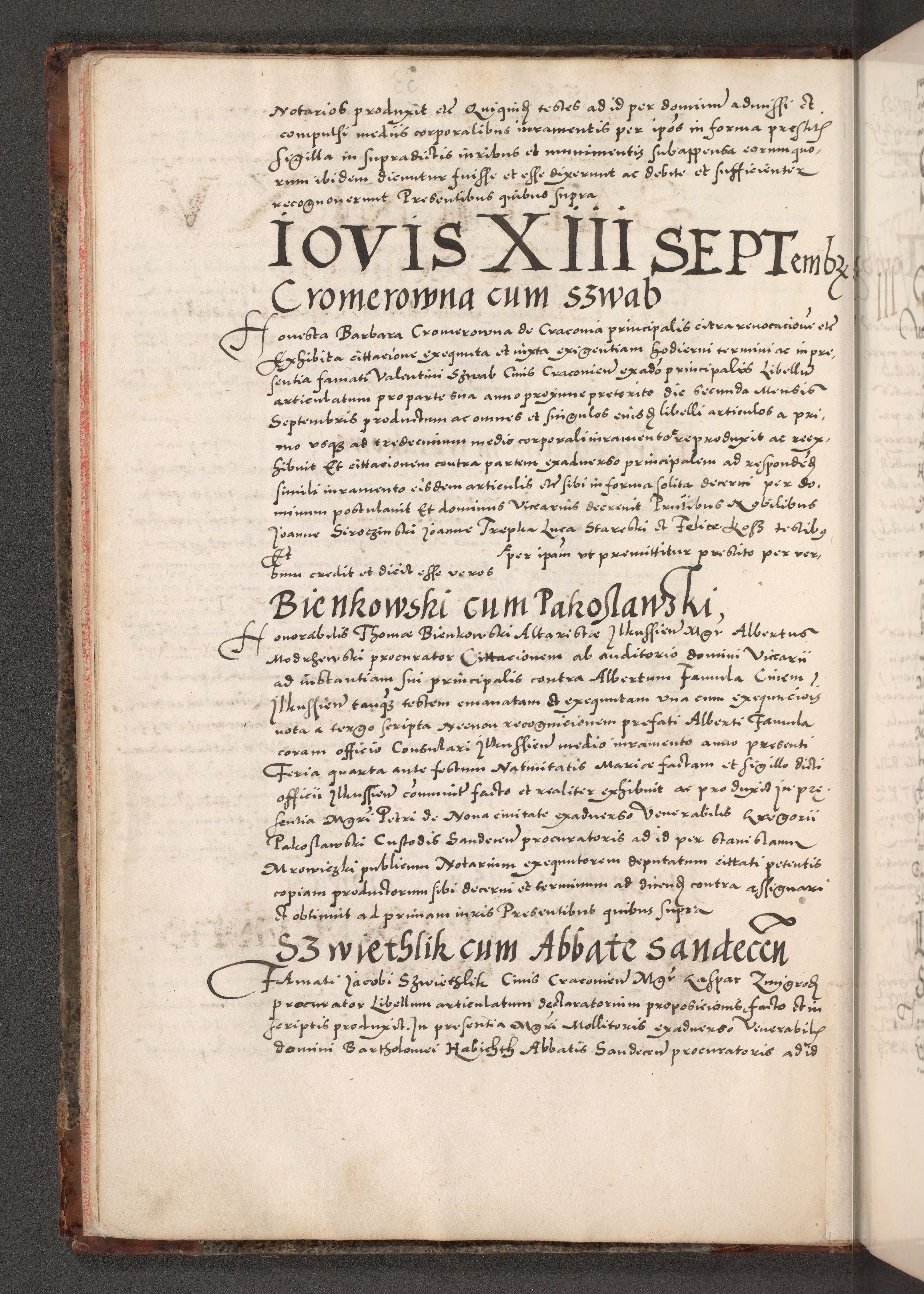 Acta actorum causarum, sententiarum tam diffinitivarum quam interloquutoriarum, decretorum, obligationum, quietationum, constitutionum procuratorum etc. coram reverendo domino Martino Izdbienski de Russiecz archidiacono Posnaniensi, custode et in spiritualibus vicario generali Cracoviensi, ad annum Domini millesimum quingesimum sexagesimum quintum, cuius indictio octava, pontificatus Pii pape, annus sextus, continuantur
