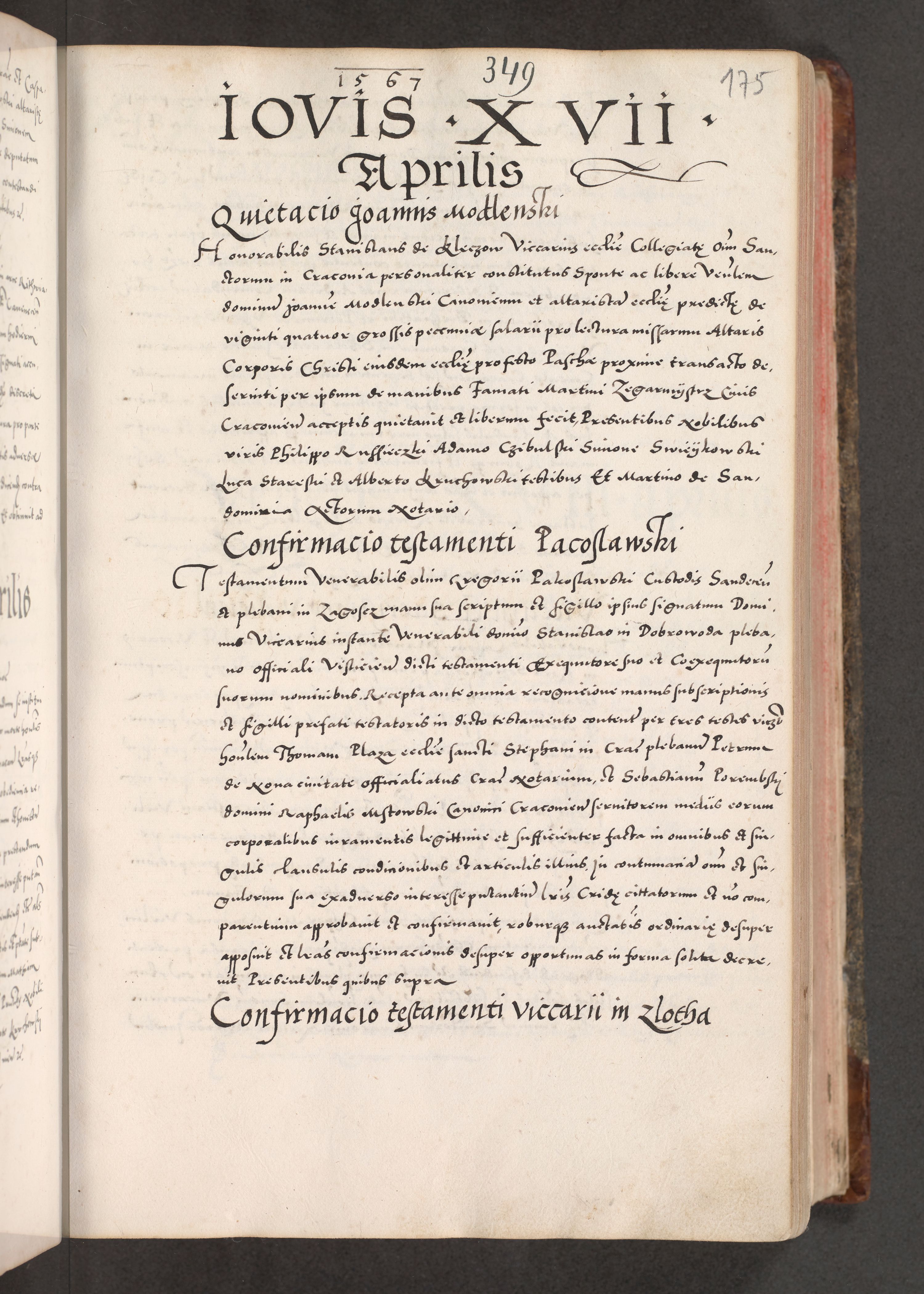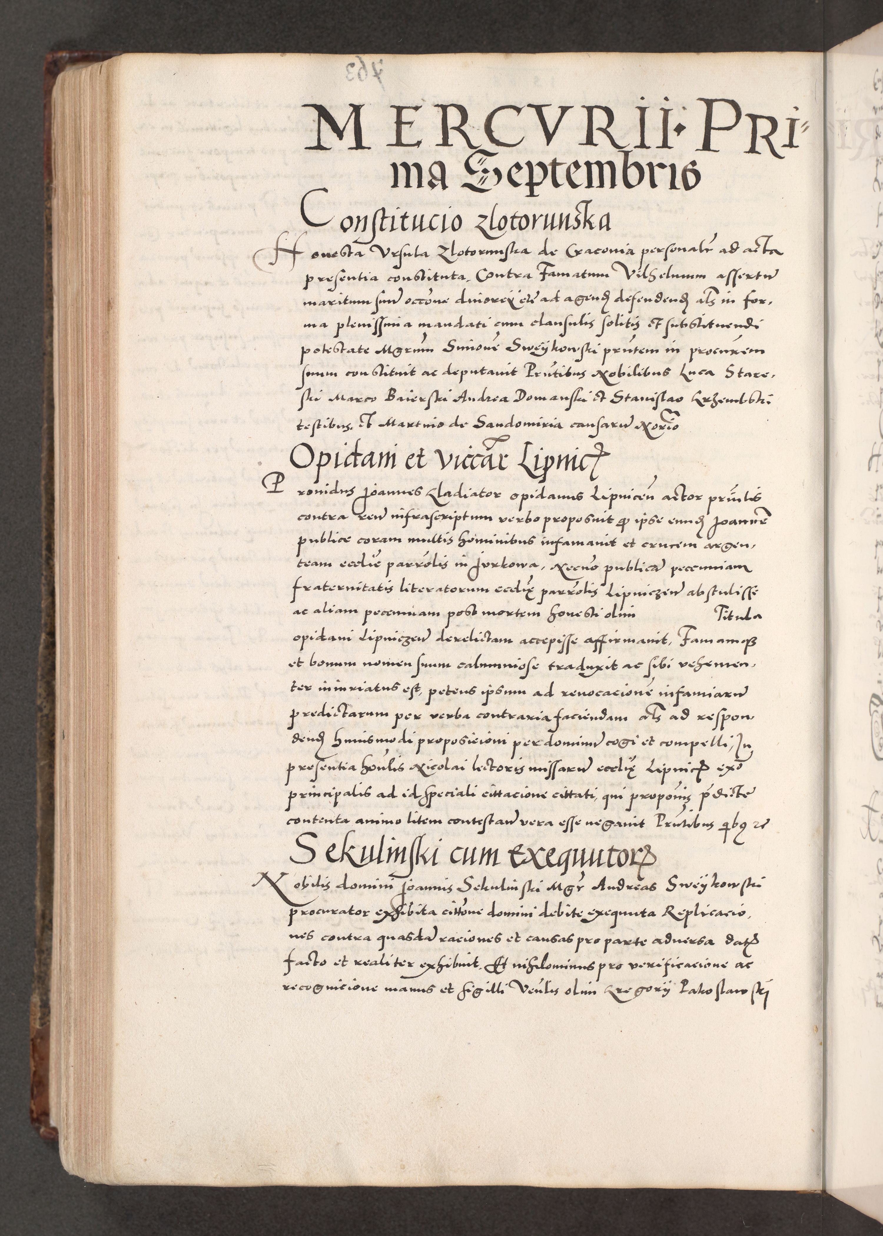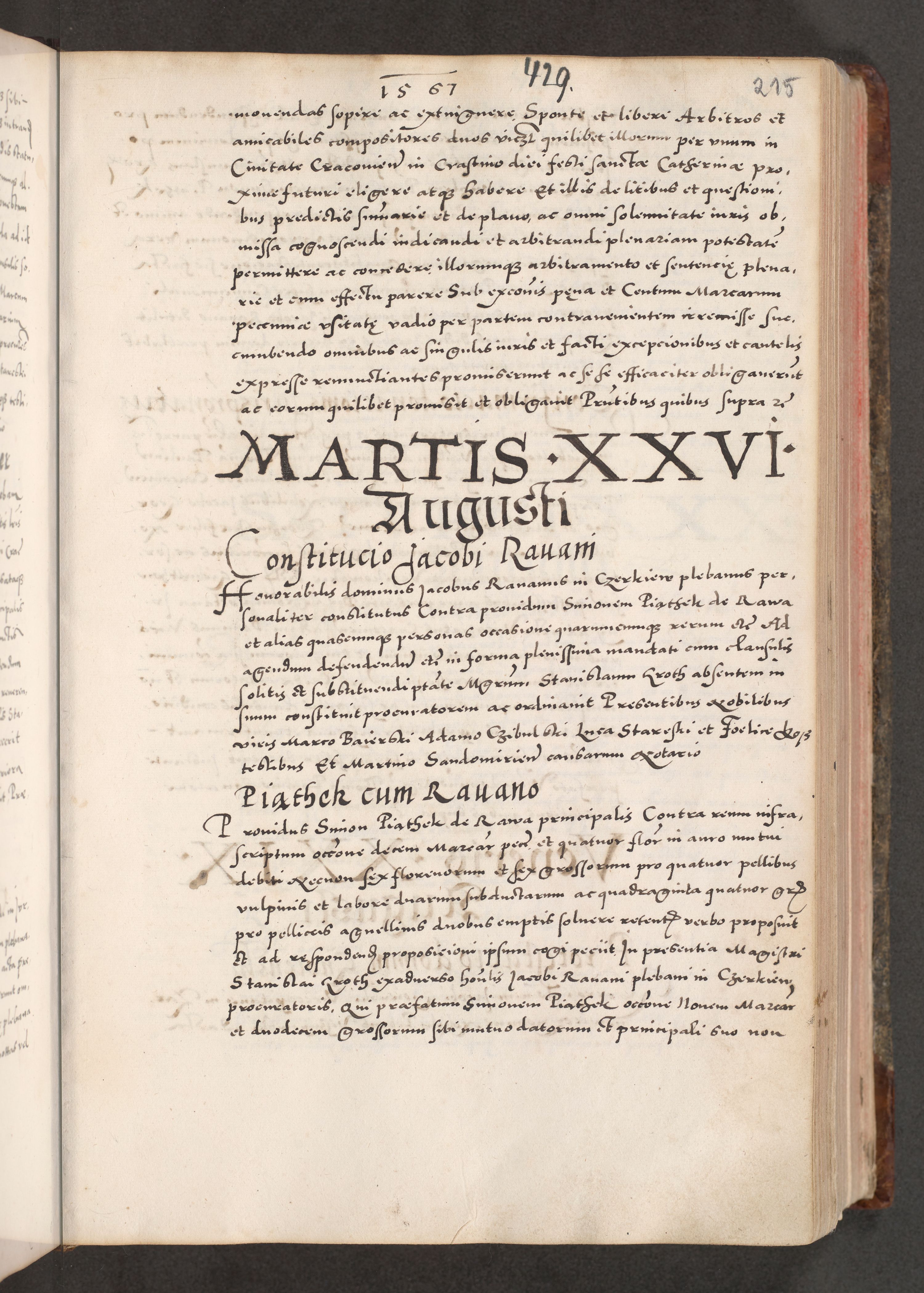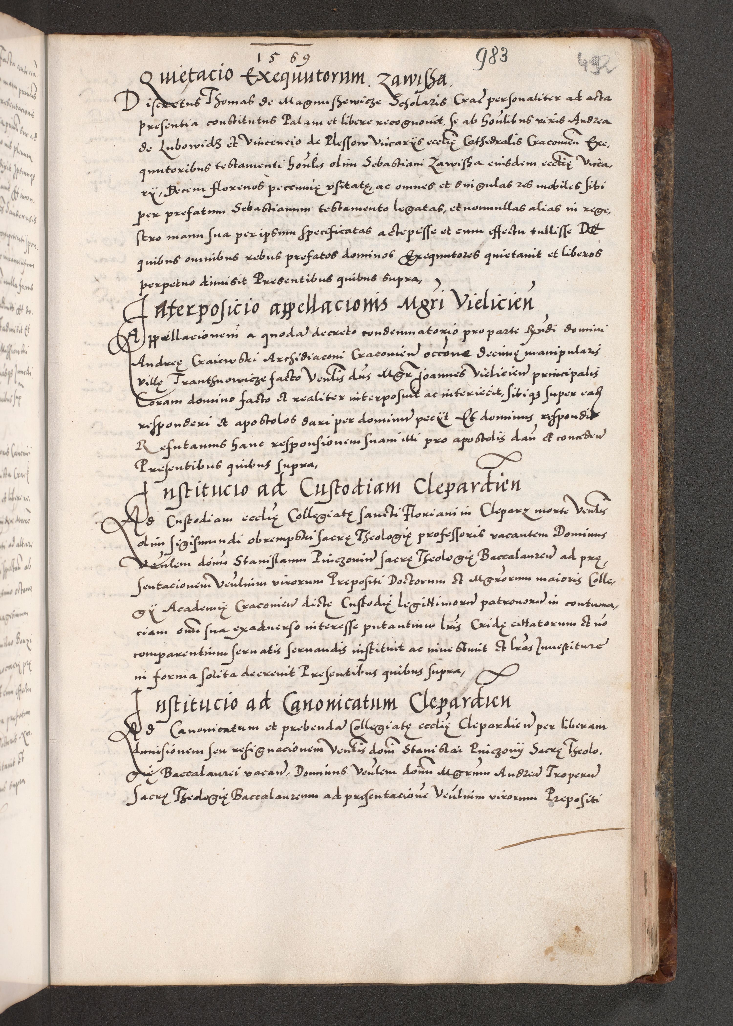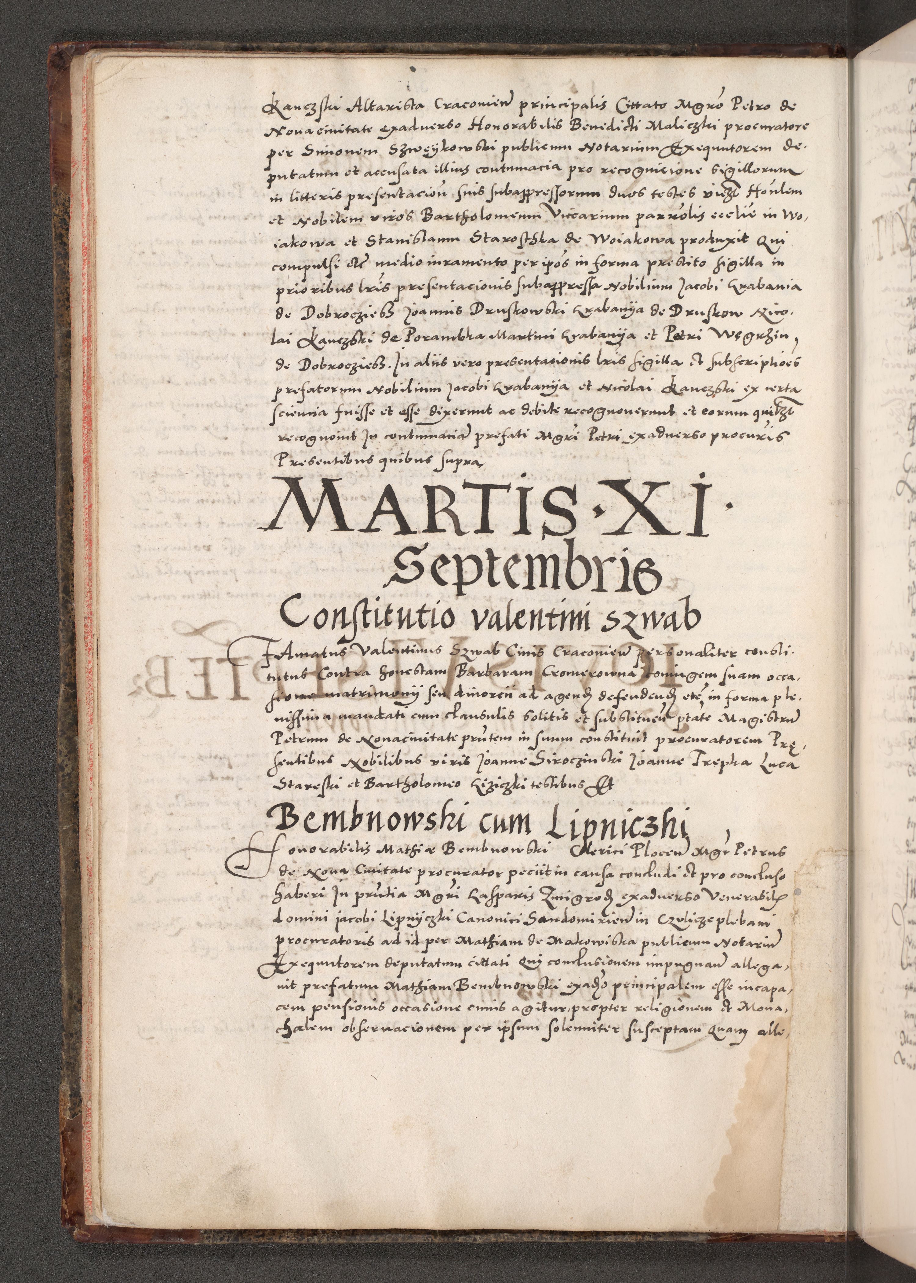 Acta actorum causarum, sententiarum tam diffinitivarum quam interloquutoriarum, decretorum, obligationum, quietationum, constitutionum procuratorum etc. coram reverendo domino Martino Izdbienski de Russiecz archidiacono Posnaniensi, custode et in spiritualibus vicario generali Cracoviensi, ad annum Domini millesimum quingesimum sexagesimum quintum, cuius indictio octava, pontificatus Pii pape, annus sextus, continuantur