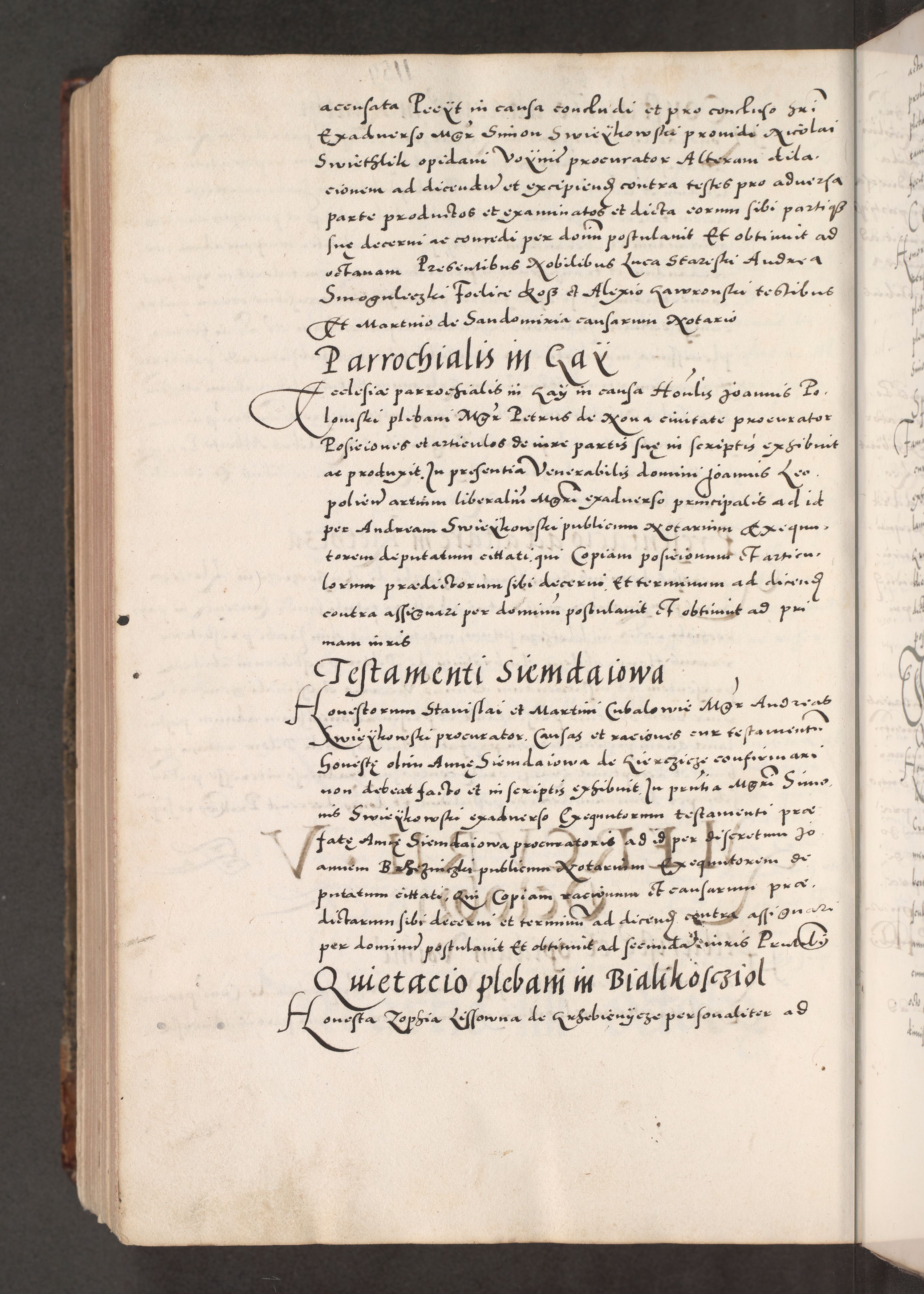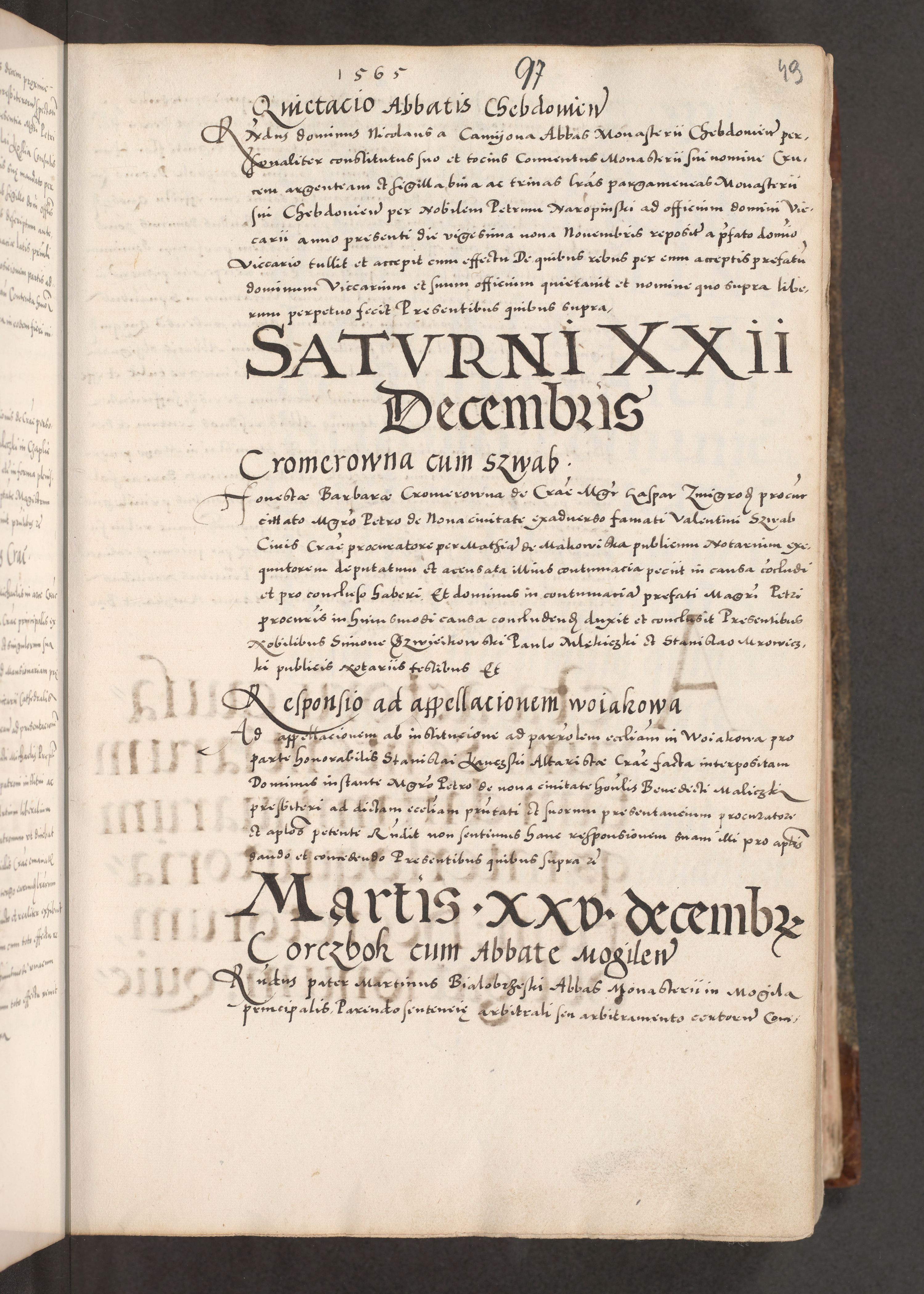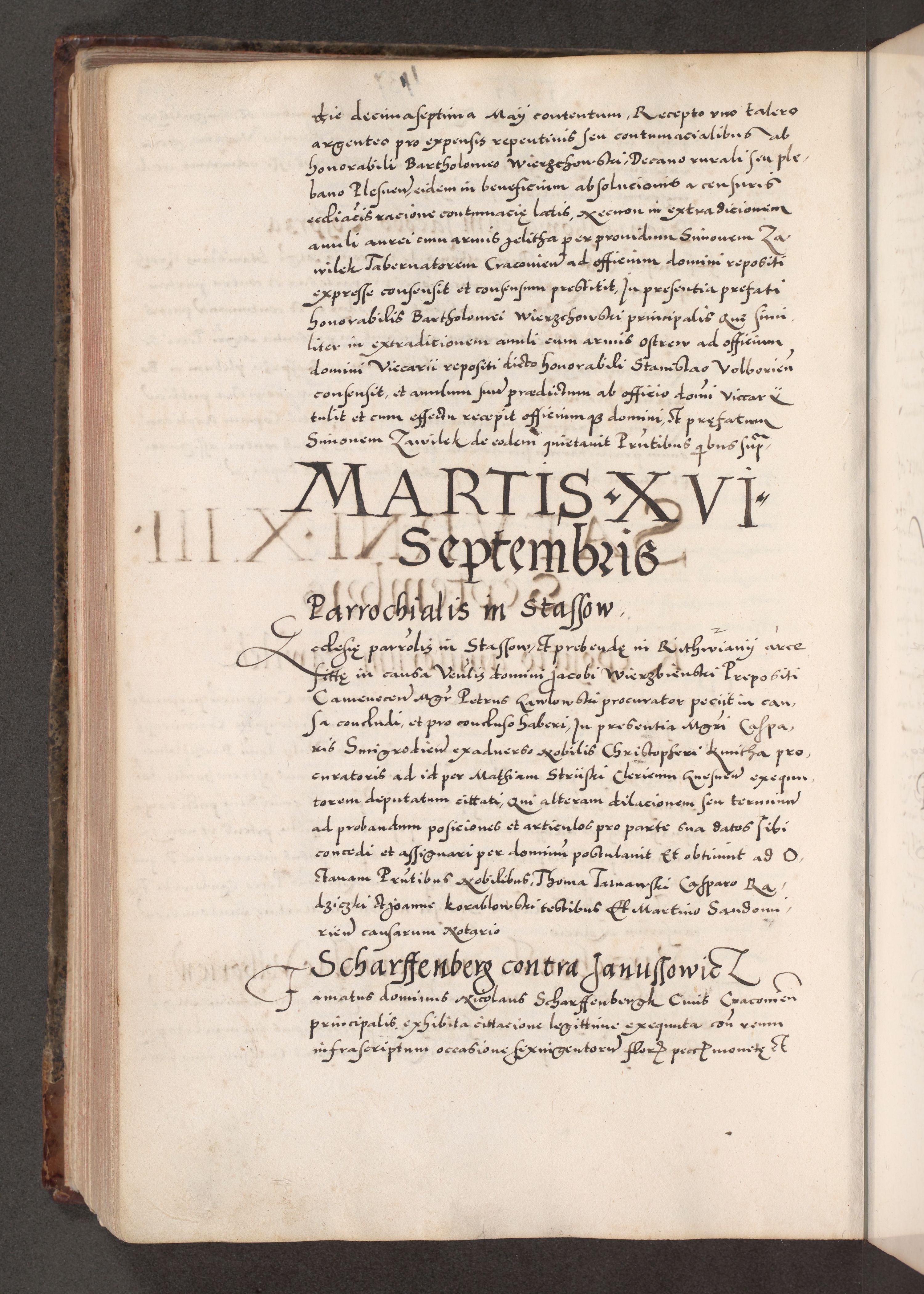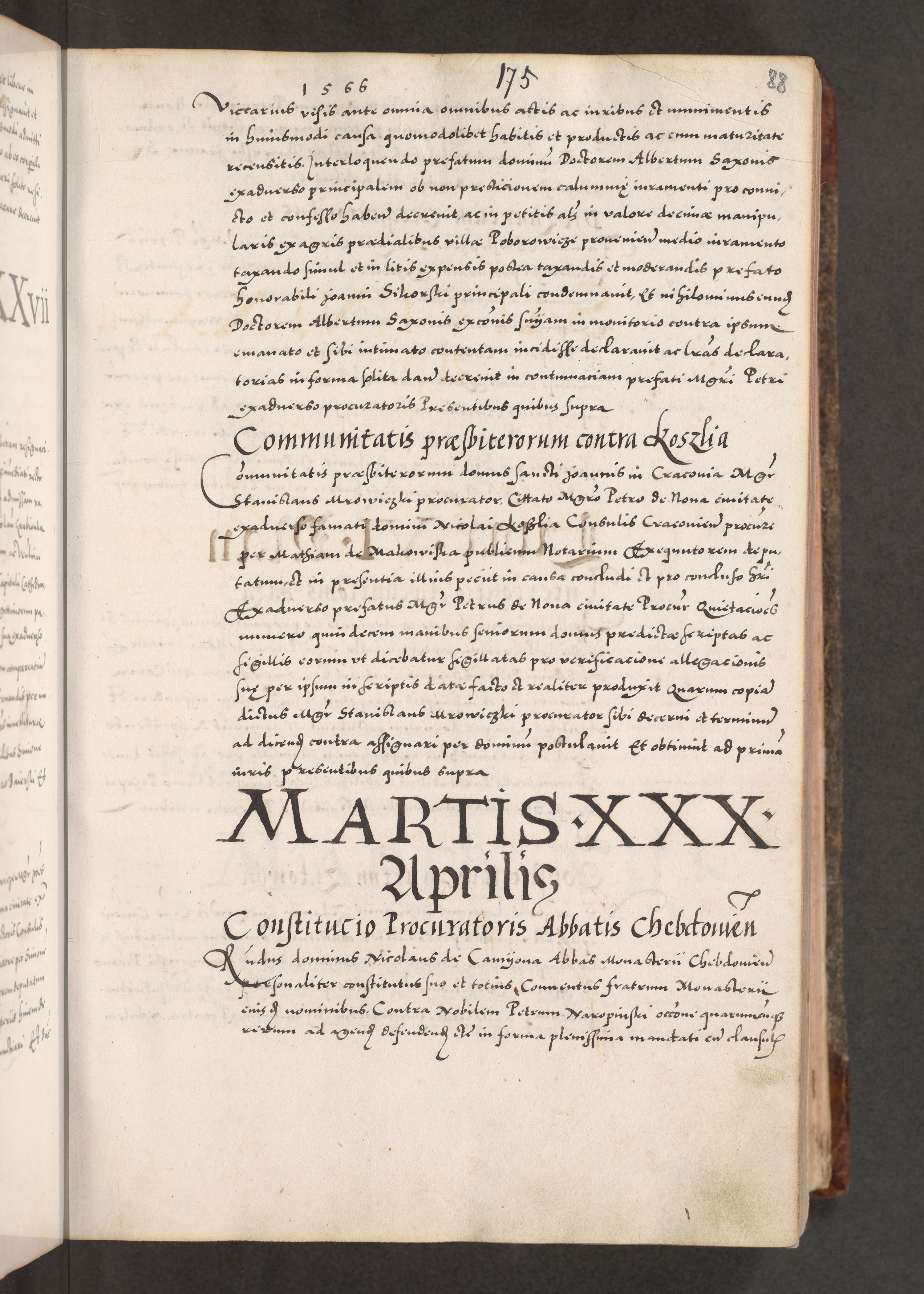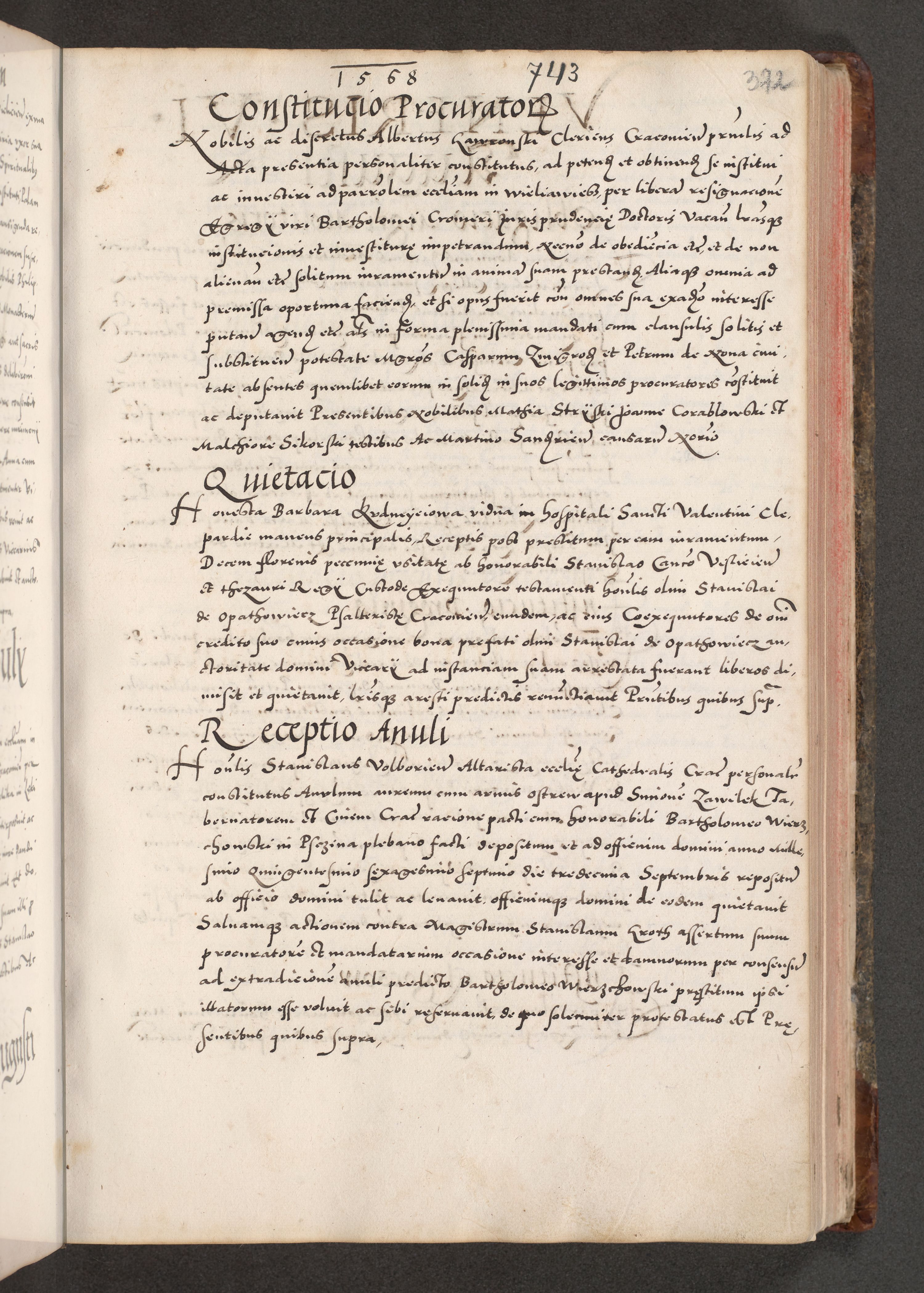 Acta actorum causarum, sententiarum tam diffinitivarum quam interloquutoriarum, decretorum, obligationum, quietationum, constitutionum procuratorum etc. coram reverendo domino Martino Izdbienski de Russiecz archidiacono Posnaniensi, custode et in spiritualibus vicario generali Cracoviensi, ad annum Domini millesimum quingesimum sexagesimum quintum, cuius indictio octava, pontificatus Pii pape, annus sextus, continuantur