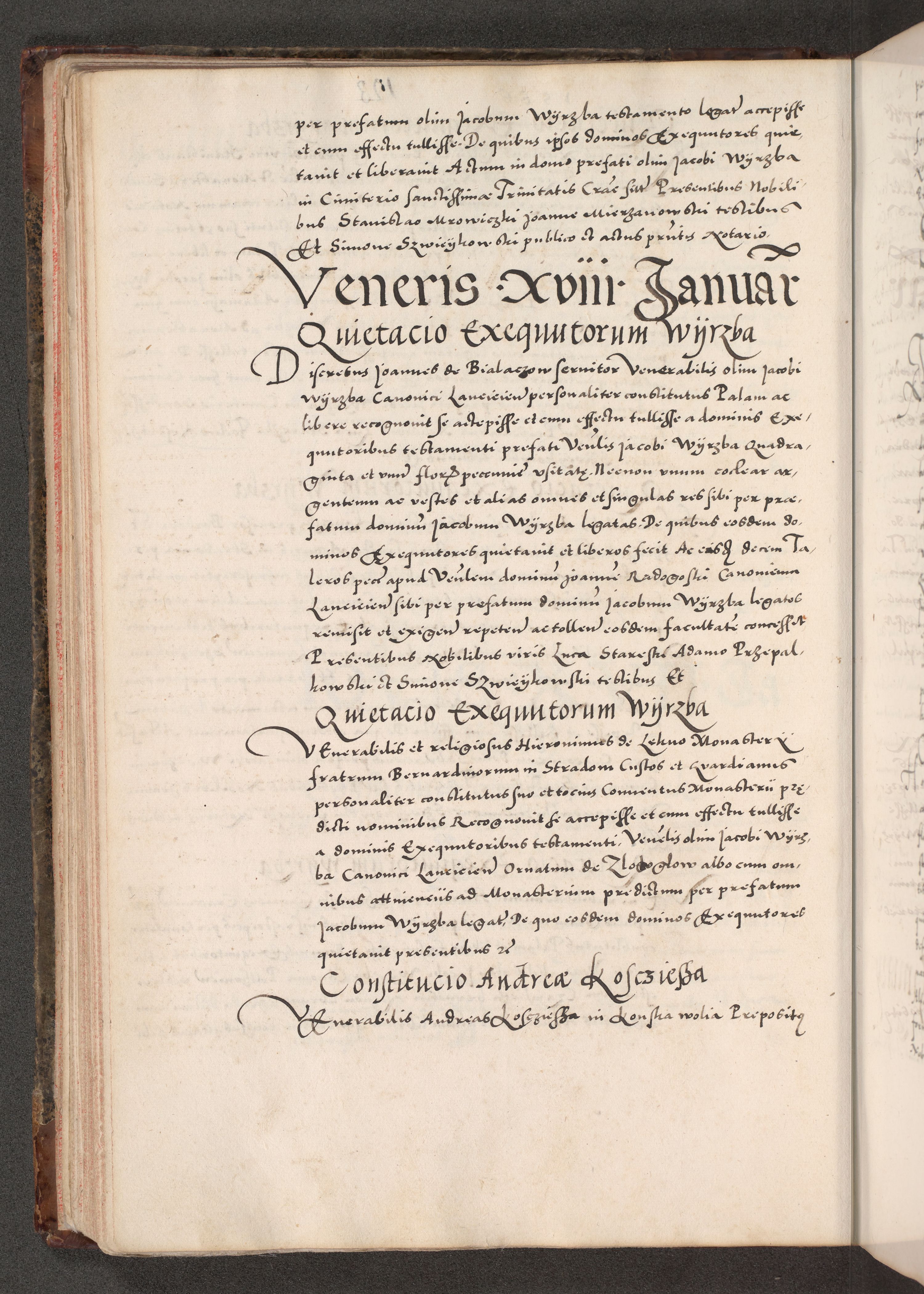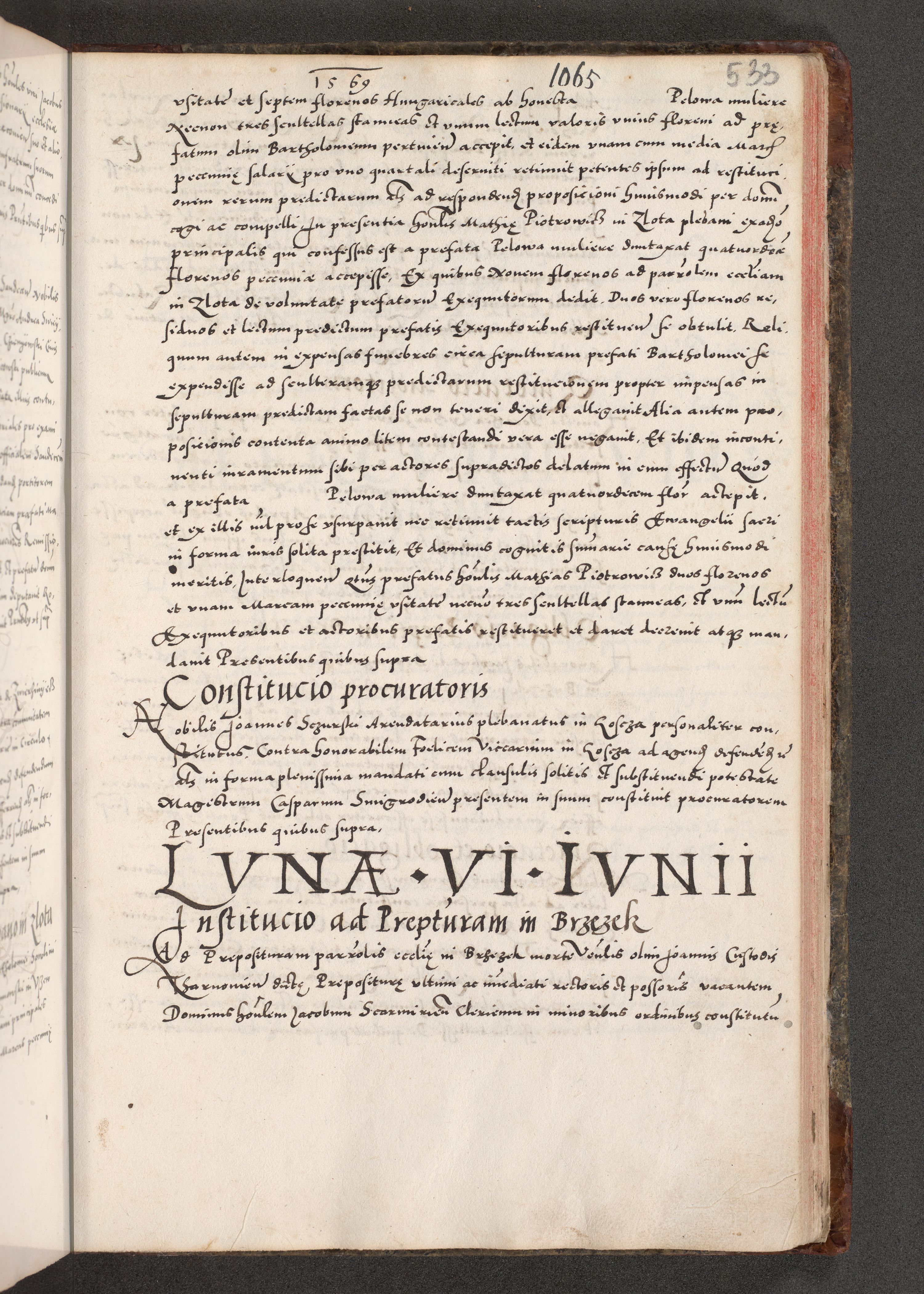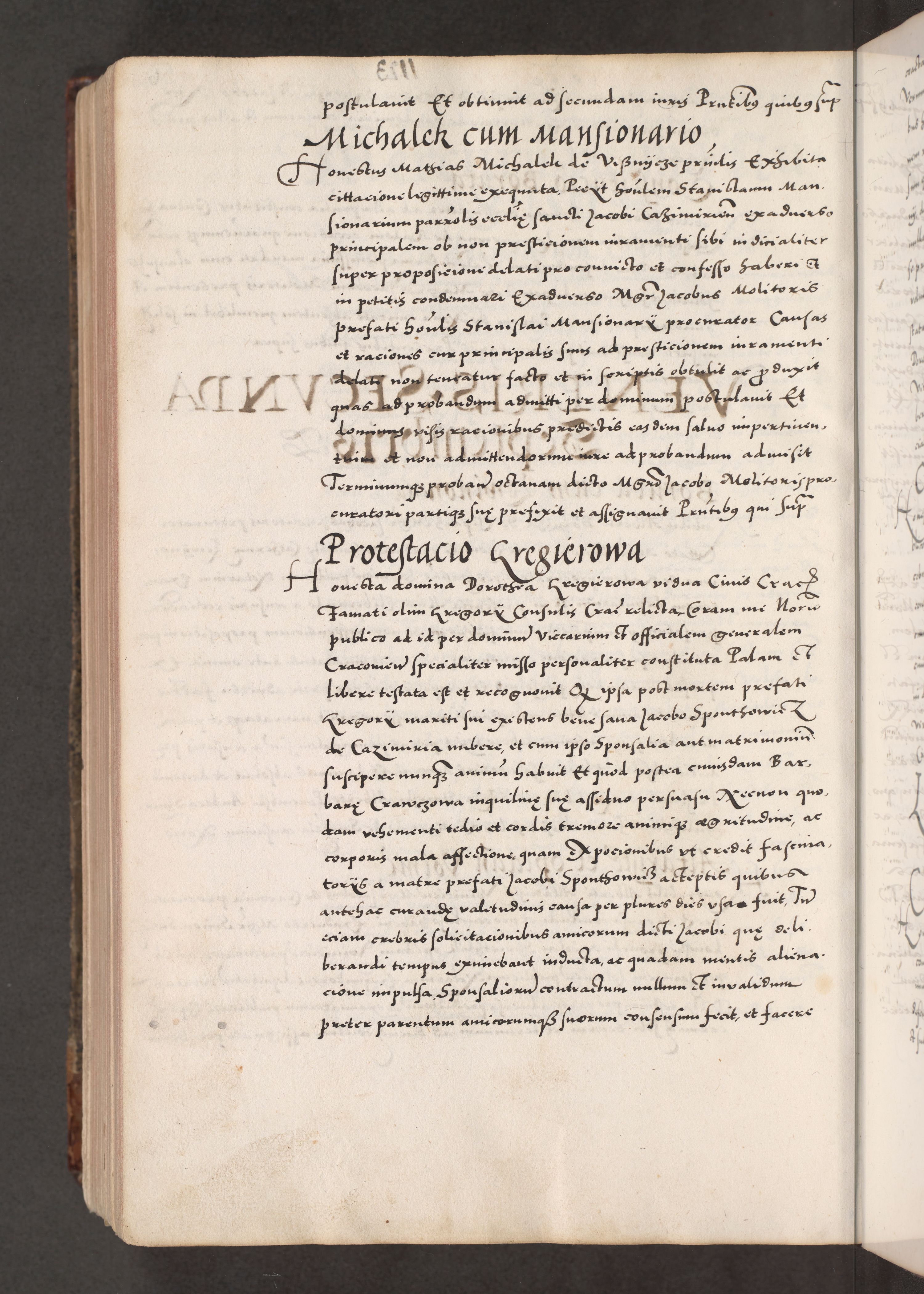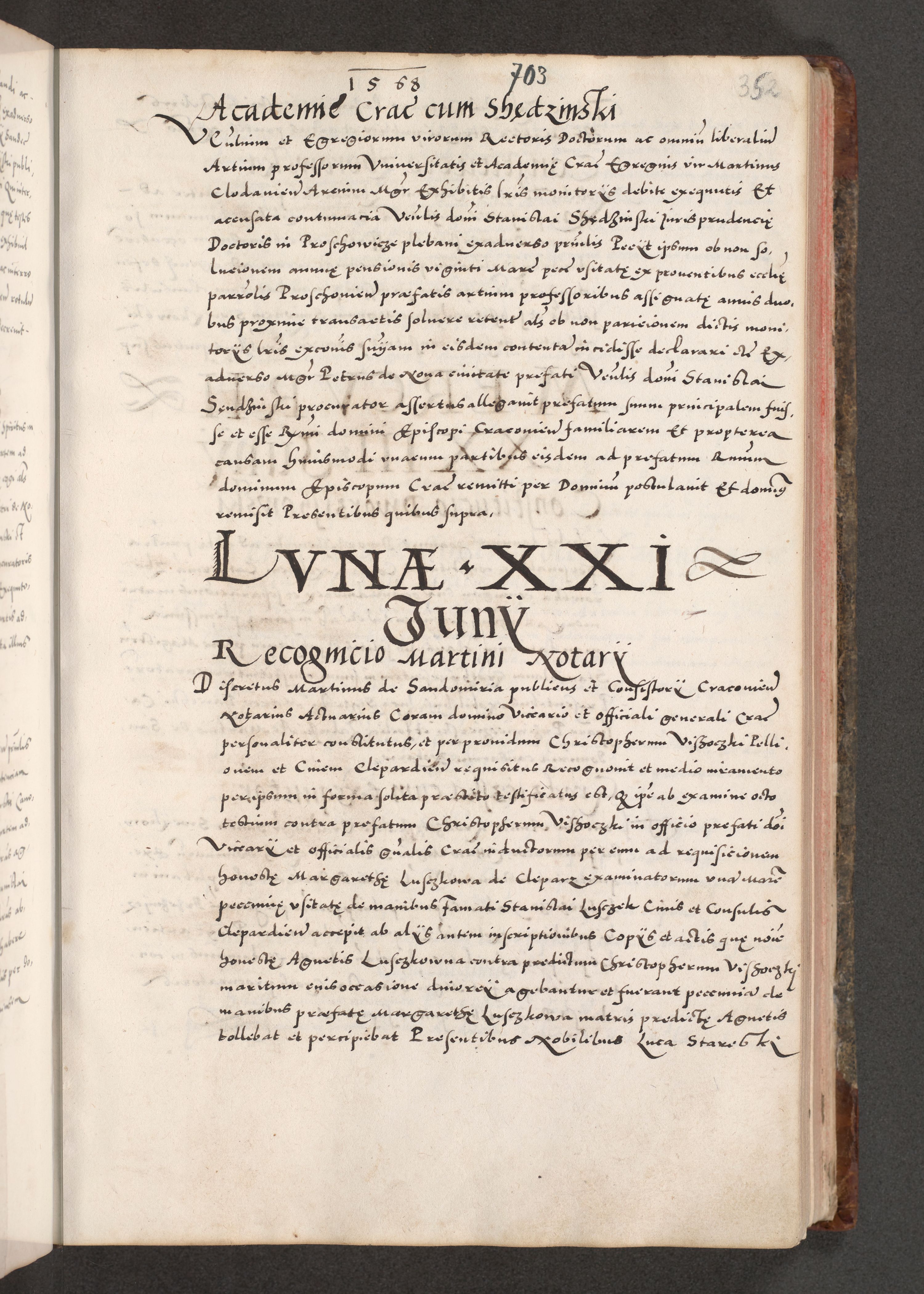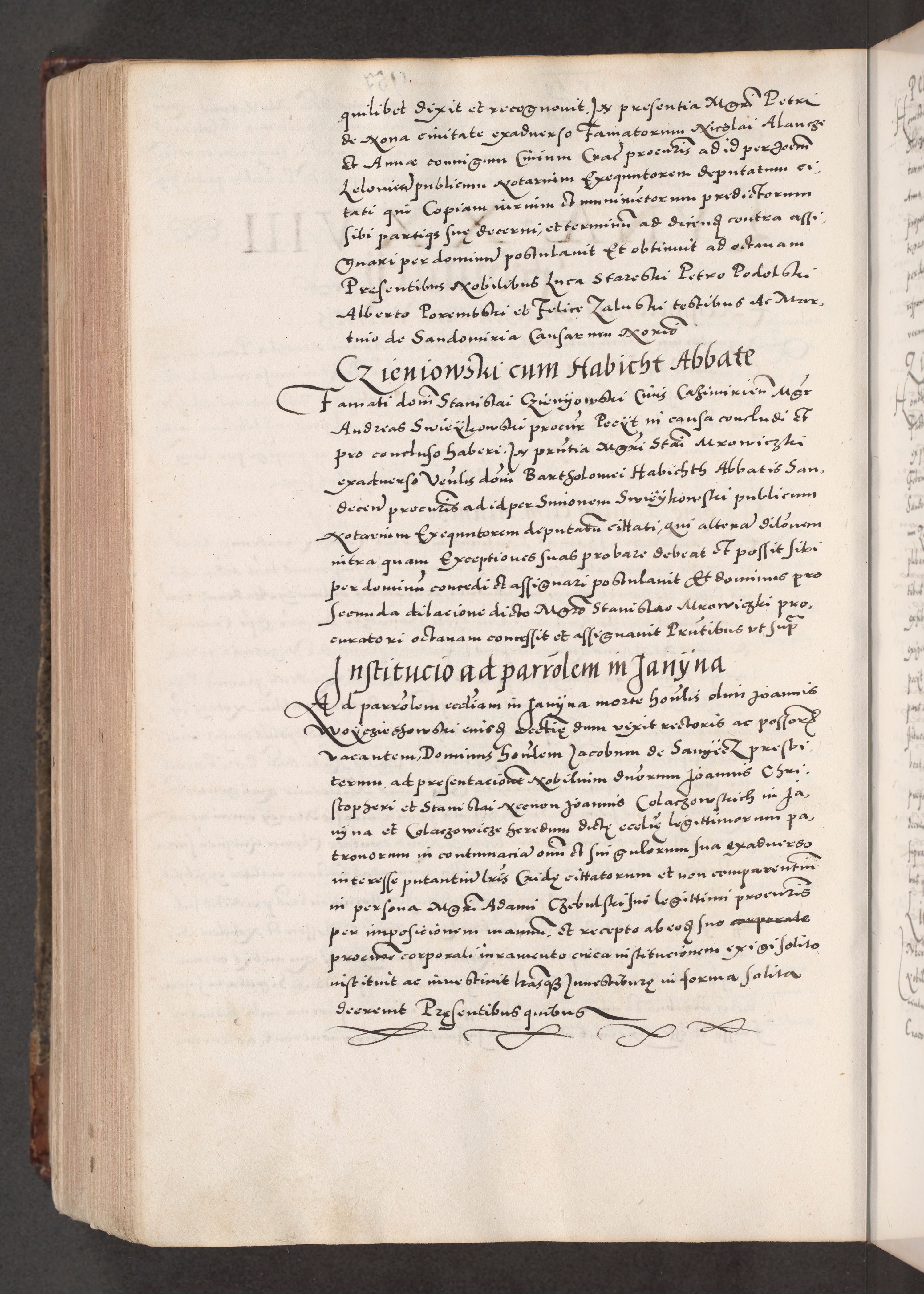 Acta actorum causarum, sententiarum tam diffinitivarum quam interloquutoriarum, decretorum, obligationum, quietationum, constitutionum procuratorum etc. coram reverendo domino Martino Izdbienski de Russiecz archidiacono Posnaniensi, custode et in spiritualibus vicario generali Cracoviensi, ad annum Domini millesimum quingesimum sexagesimum quintum, cuius indictio octava, pontificatus Pii pape, annus sextus, continuantur