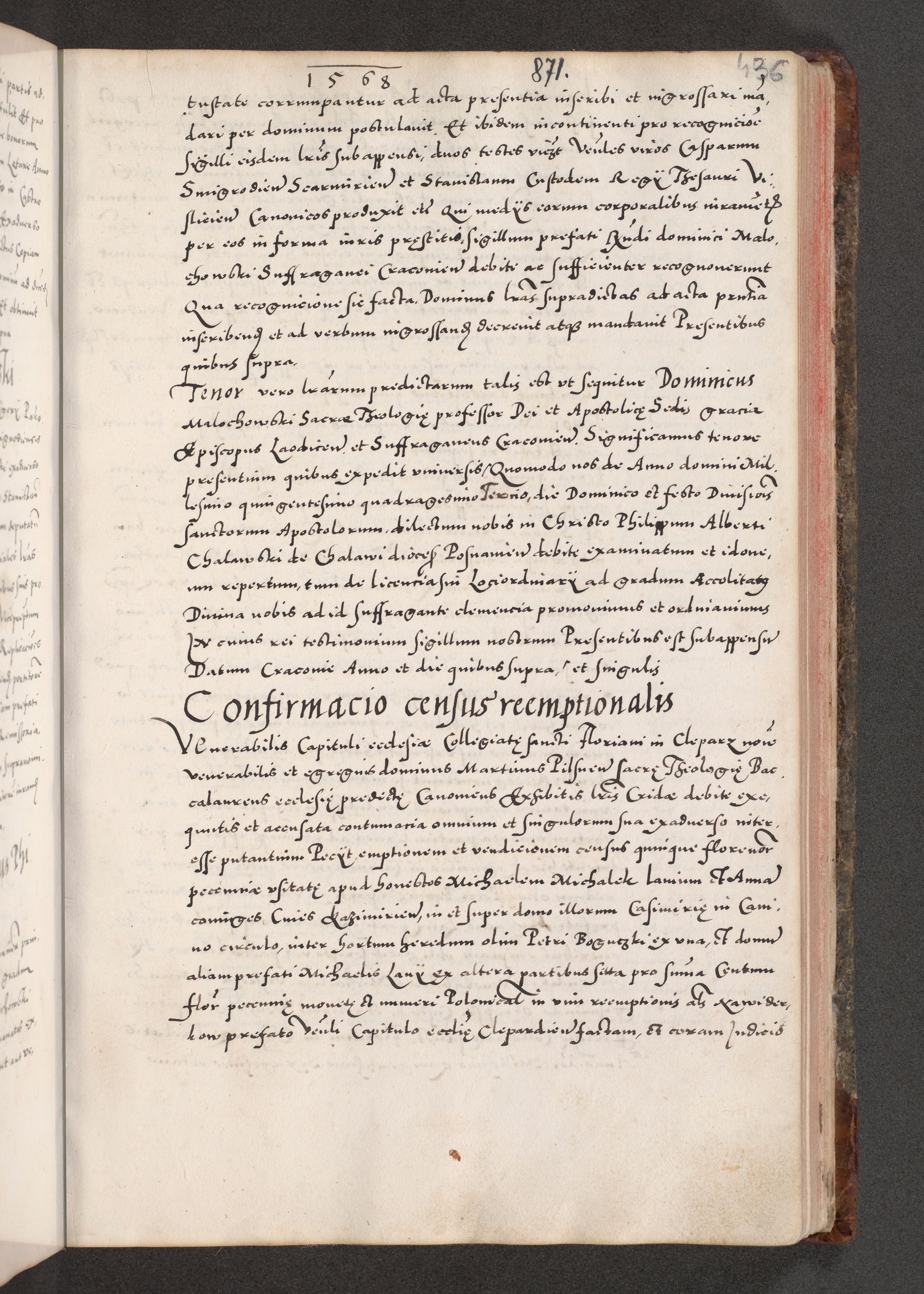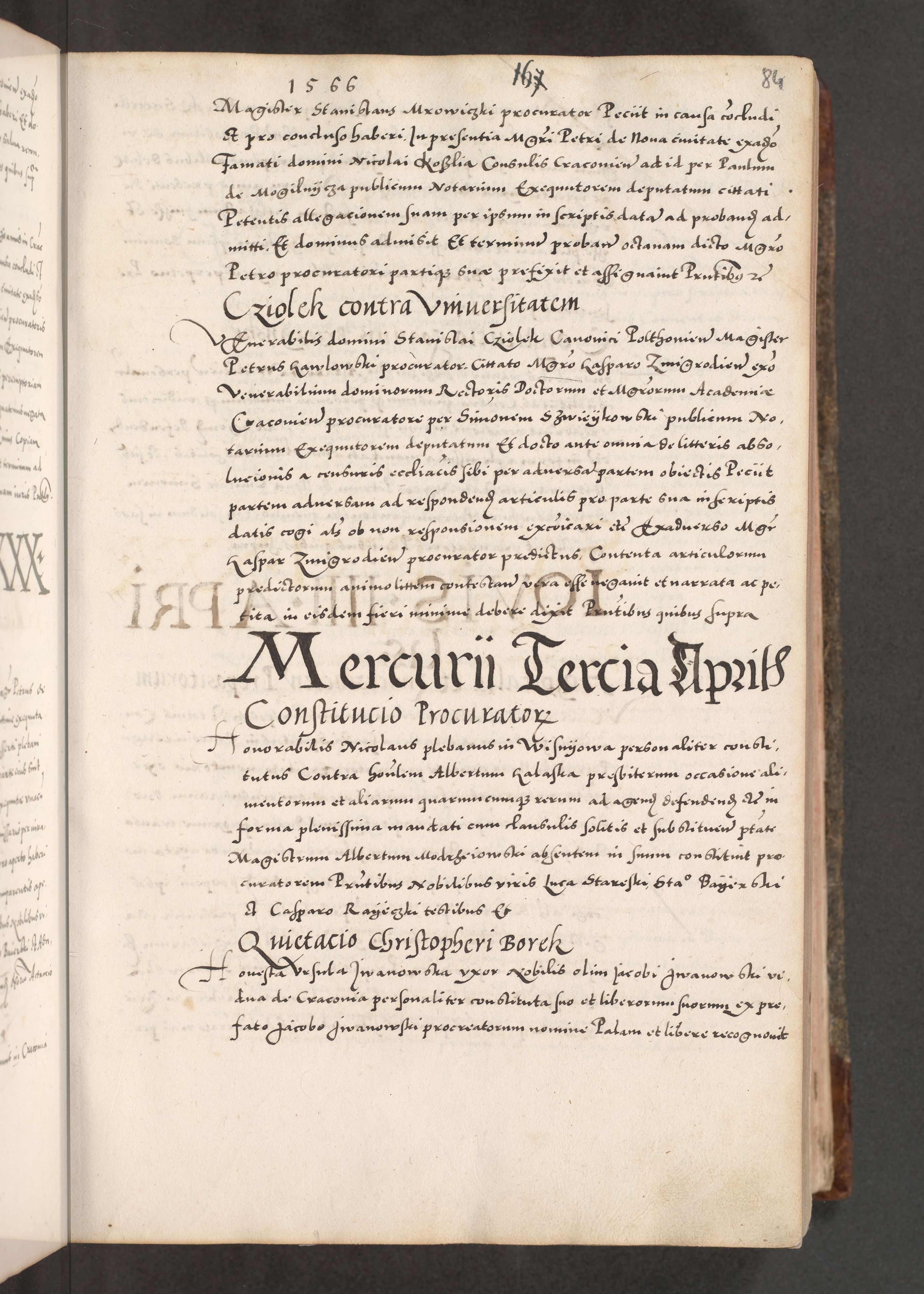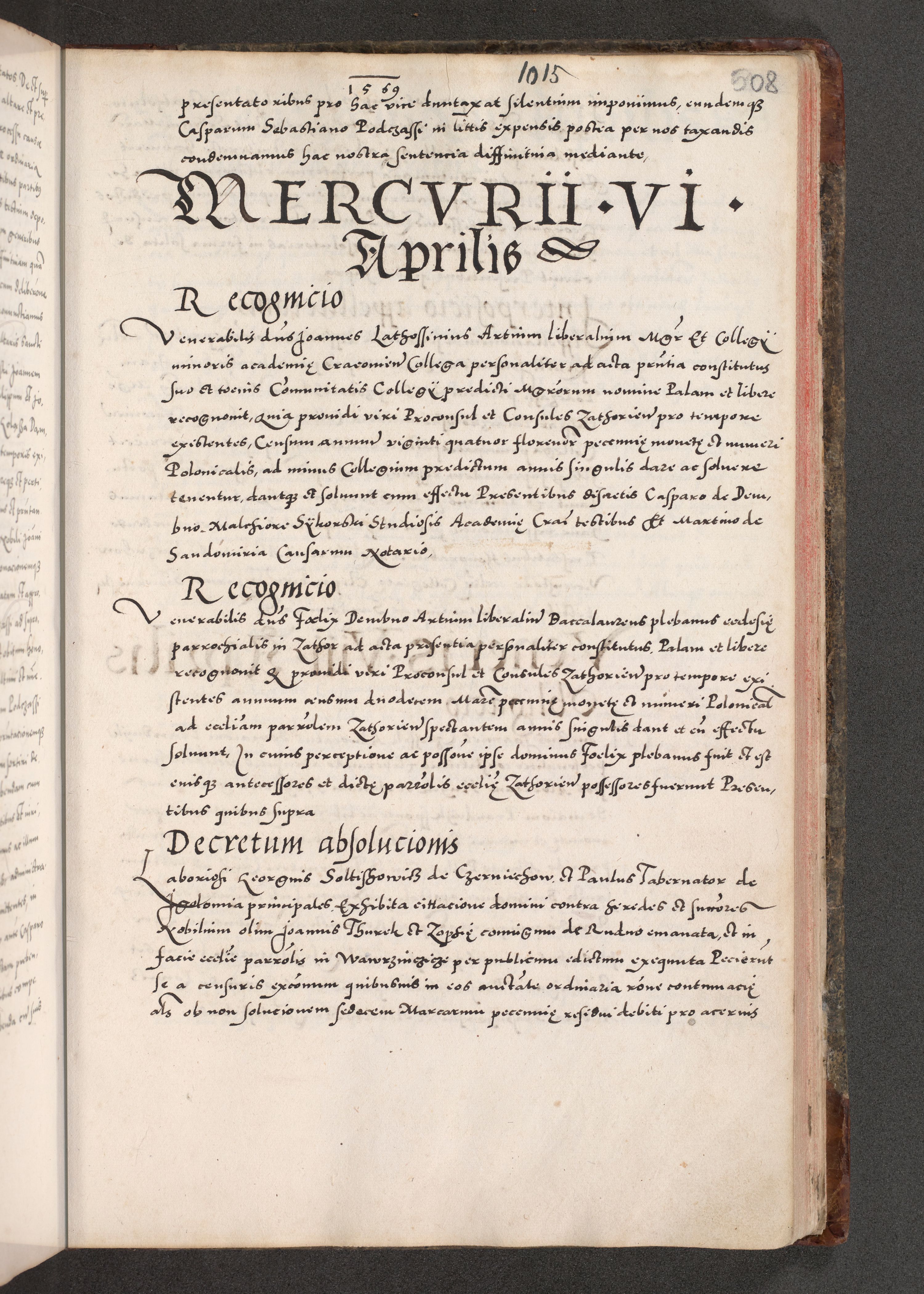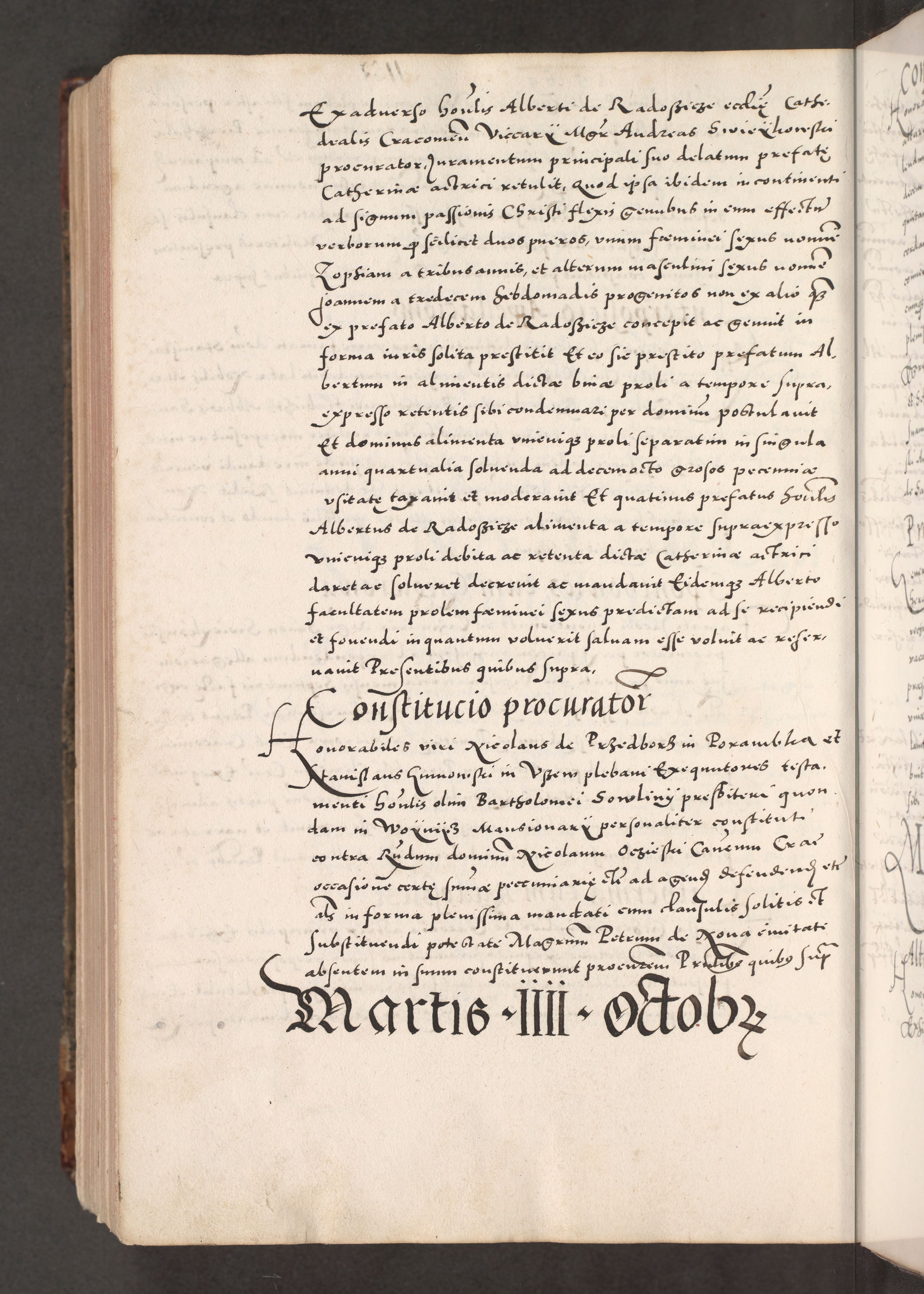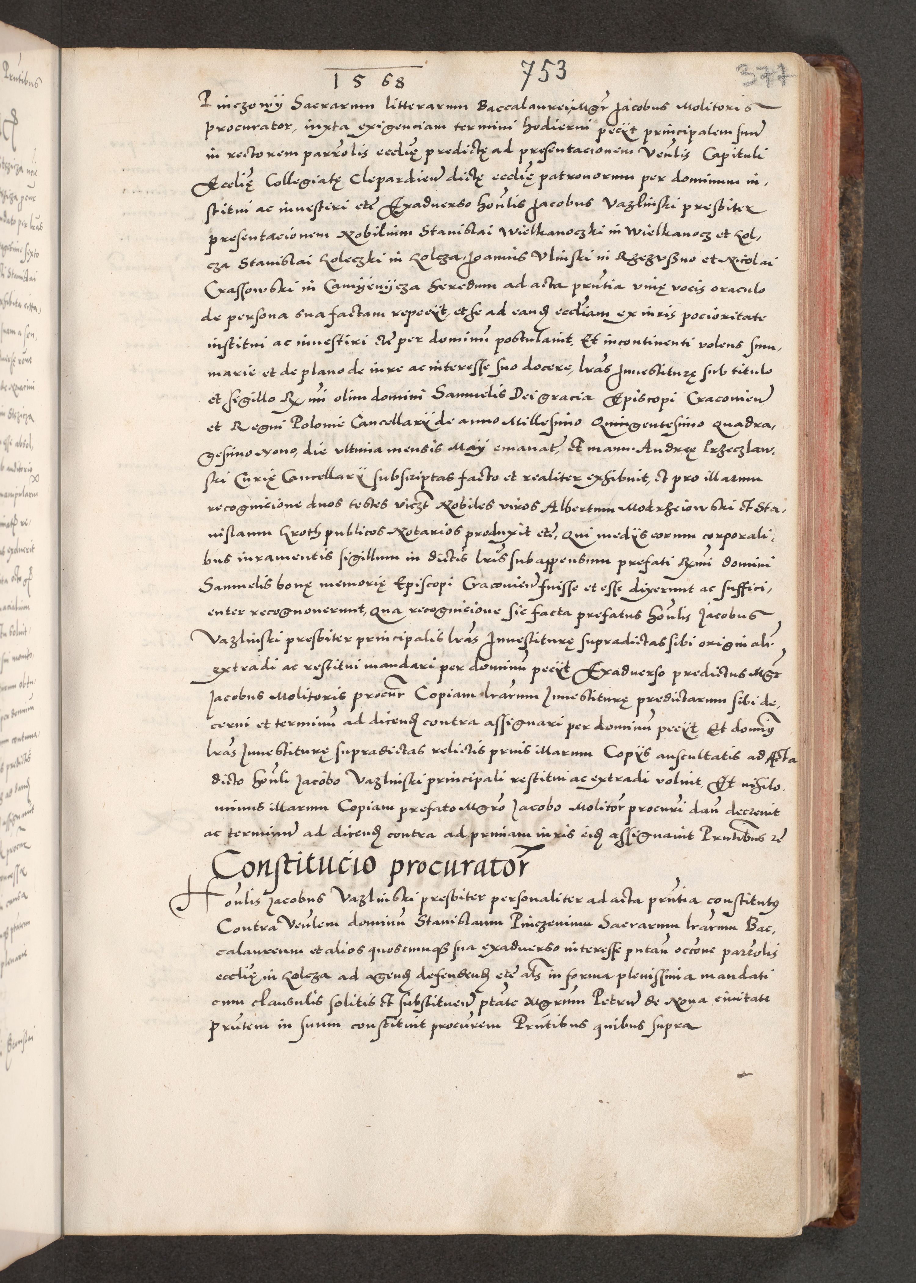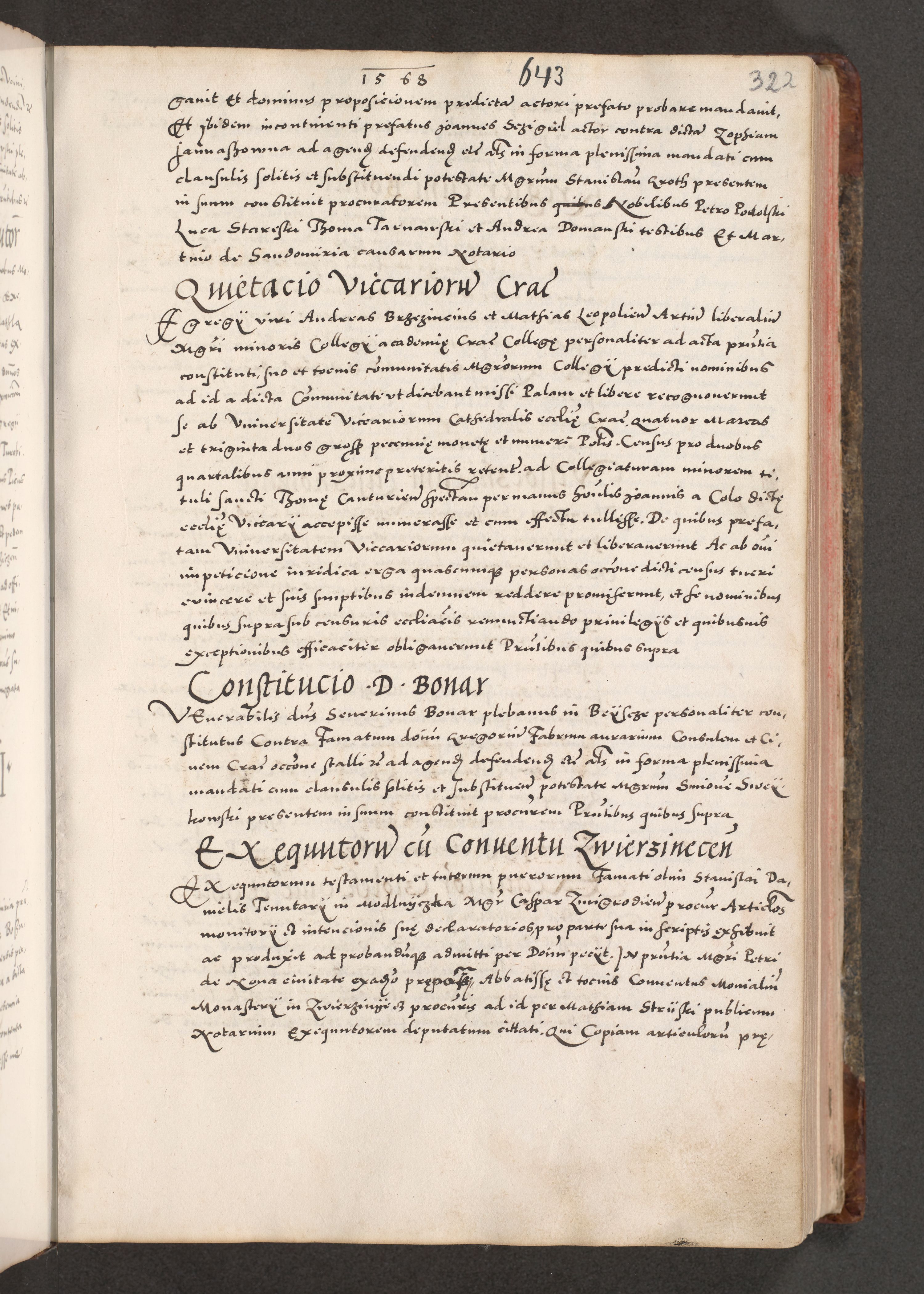 Acta actorum causarum, sententiarum tam diffinitivarum quam interloquutoriarum, decretorum, obligationum, quietationum, constitutionum procuratorum etc. coram reverendo domino Martino Izdbienski de Russiecz archidiacono Posnaniensi, custode et in spiritualibus vicario generali Cracoviensi, ad annum Domini millesimum quingesimum sexagesimum quintum, cuius indictio octava, pontificatus Pii pape, annus sextus, continuantur