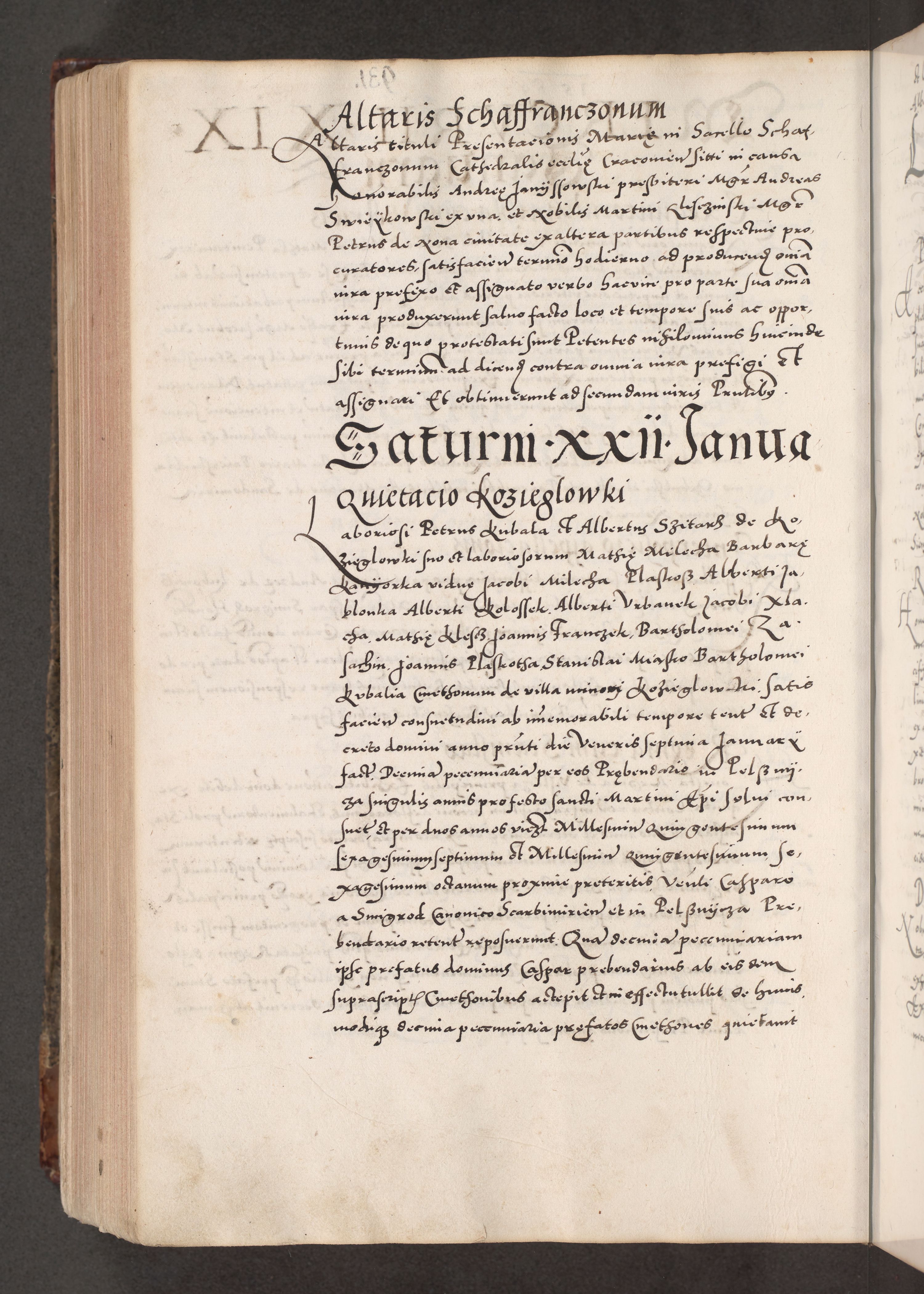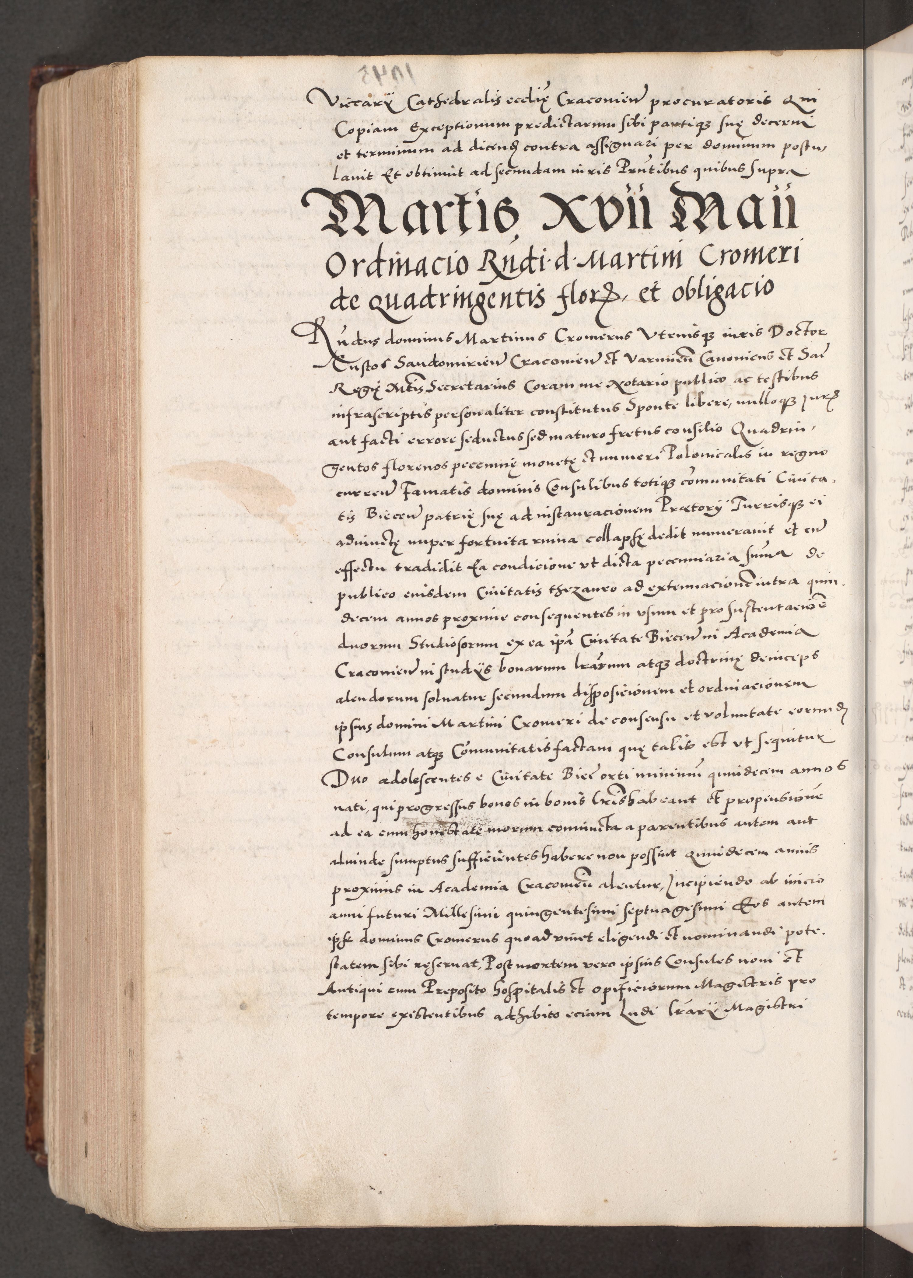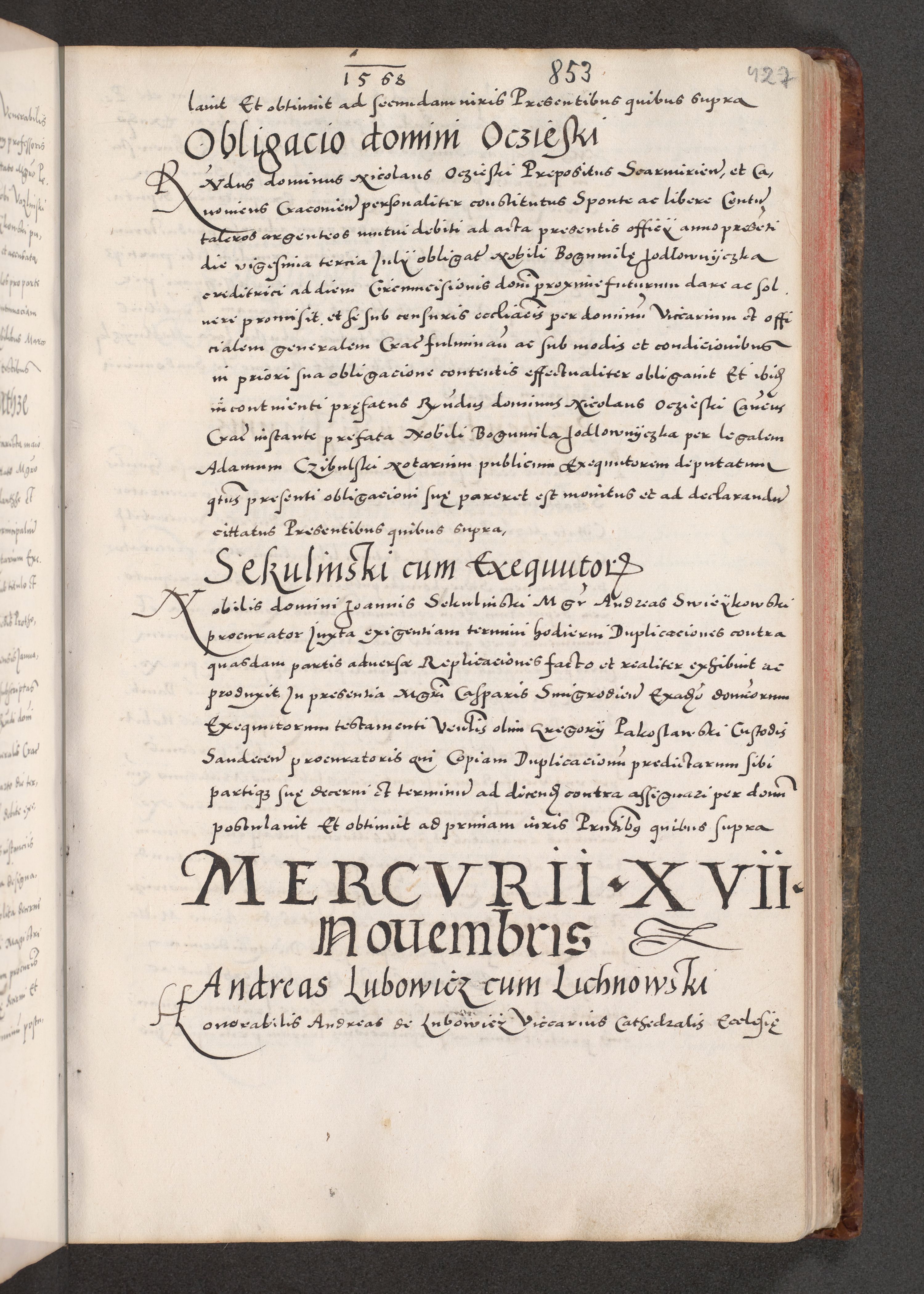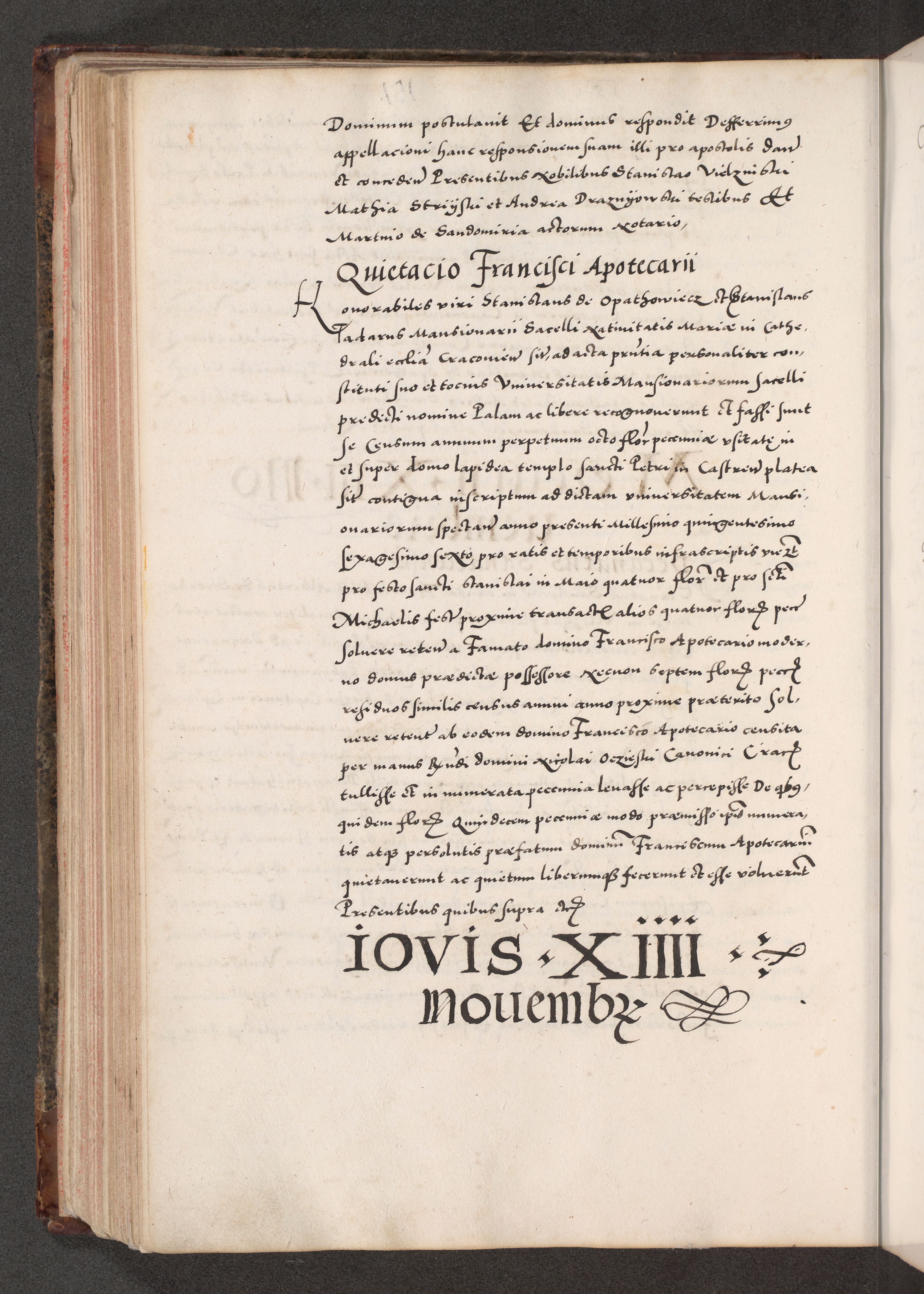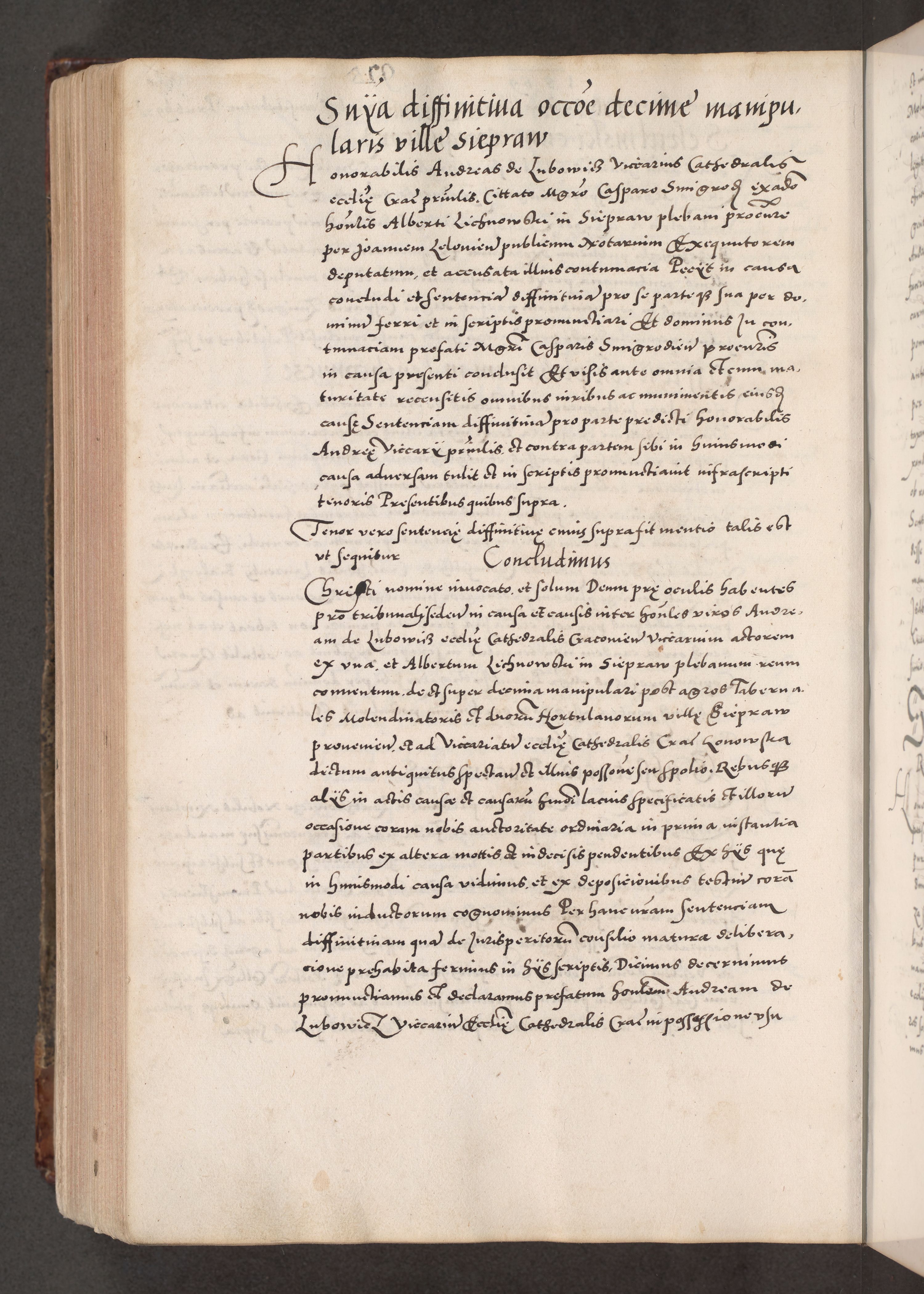 Acta actorum causarum, sententiarum tam diffinitivarum quam interloquutoriarum, decretorum, obligationum, quietationum, constitutionum procuratorum etc. coram reverendo domino Martino Izdbienski de Russiecz archidiacono Posnaniensi, custode et in spiritualibus vicario generali Cracoviensi, ad annum Domini millesimum quingesimum sexagesimum quintum, cuius indictio octava, pontificatus Pii pape, annus sextus, continuantur