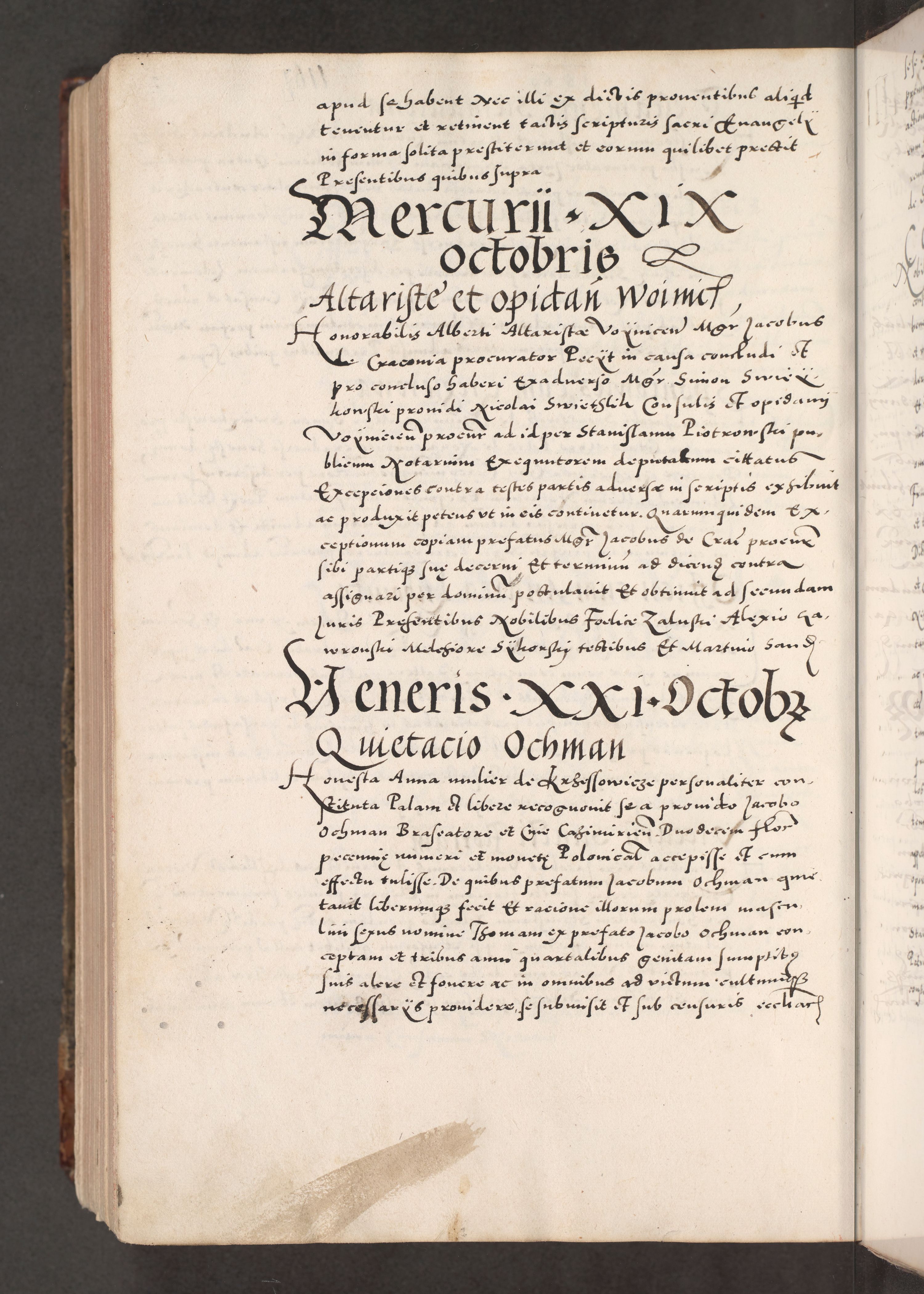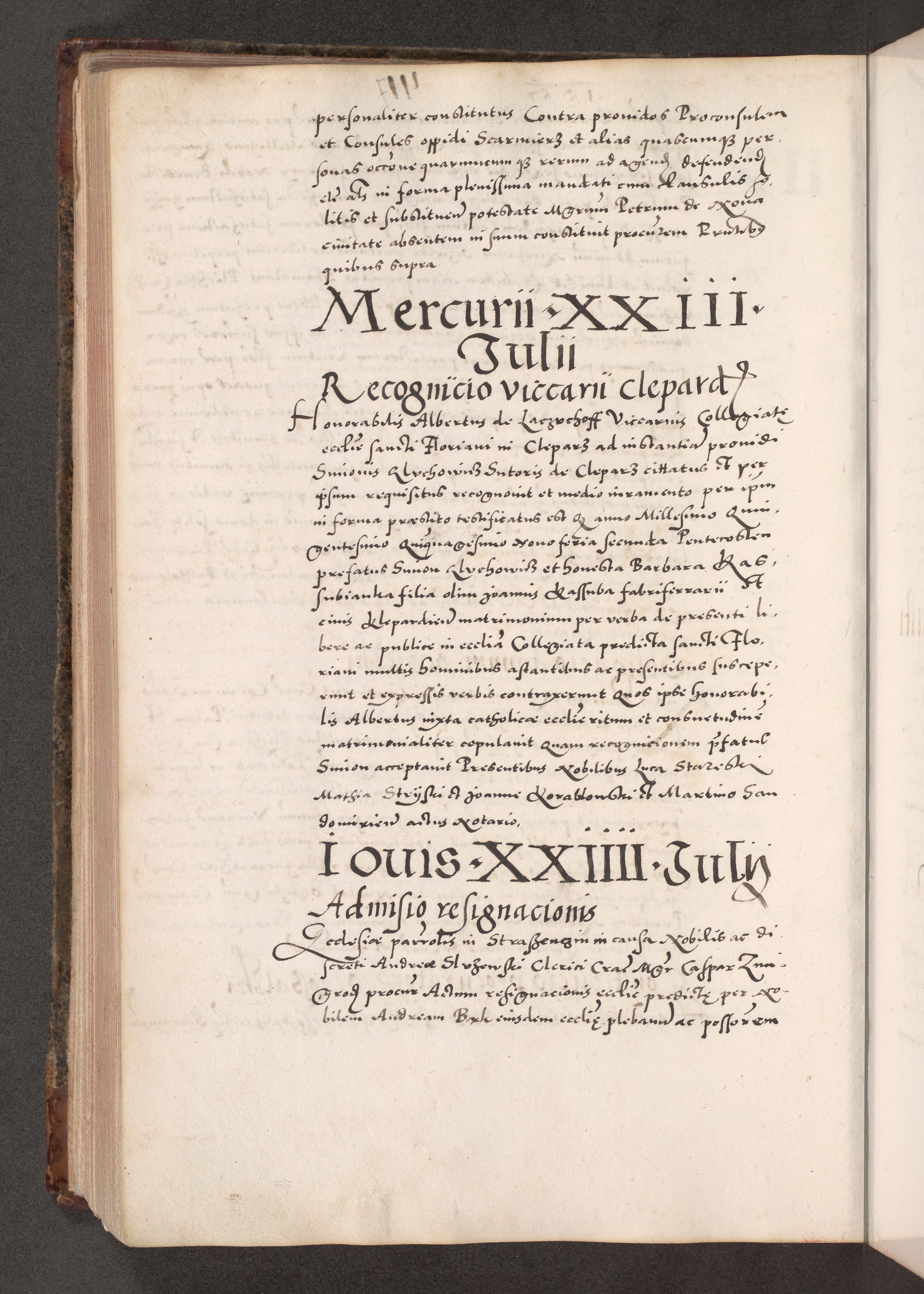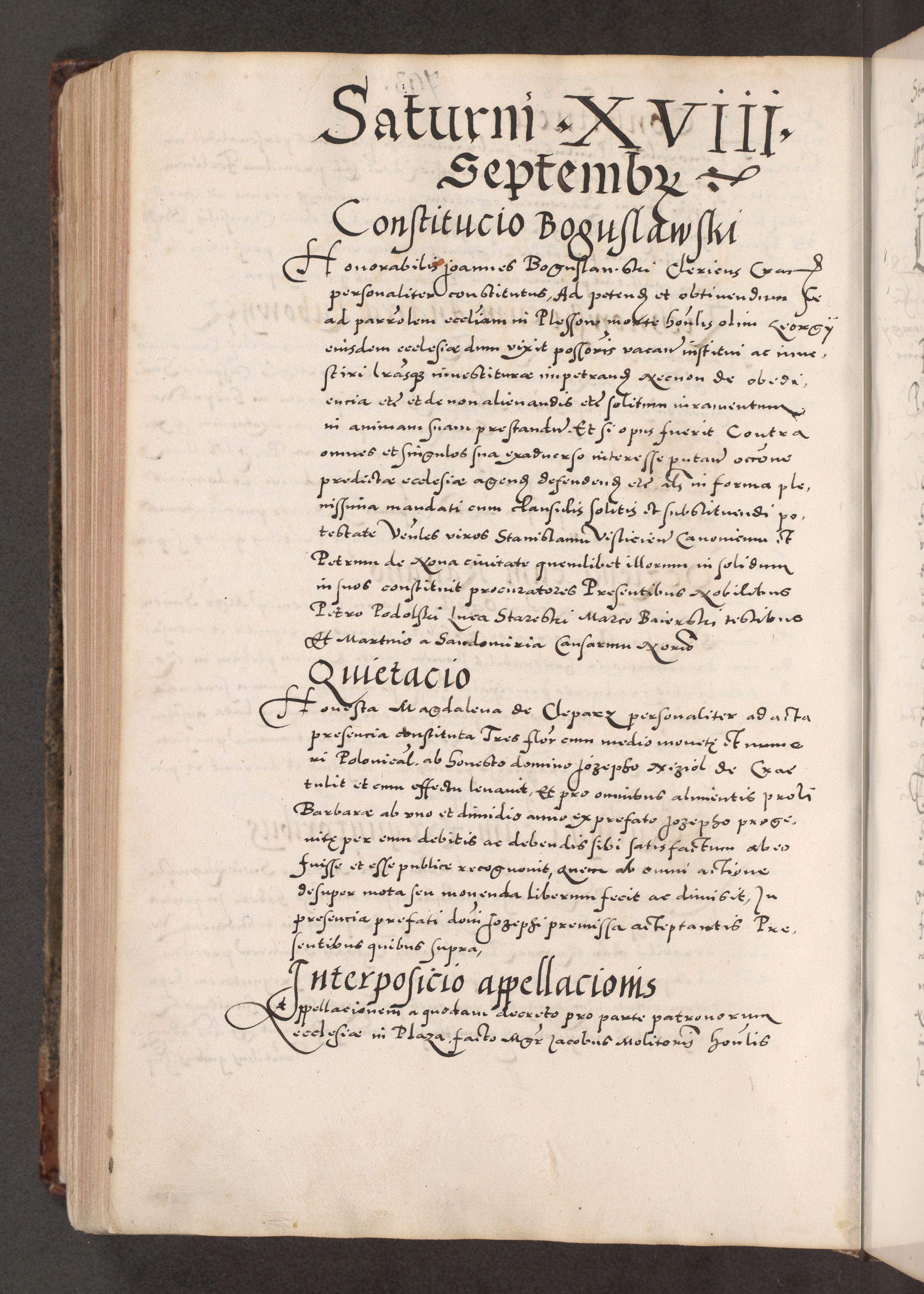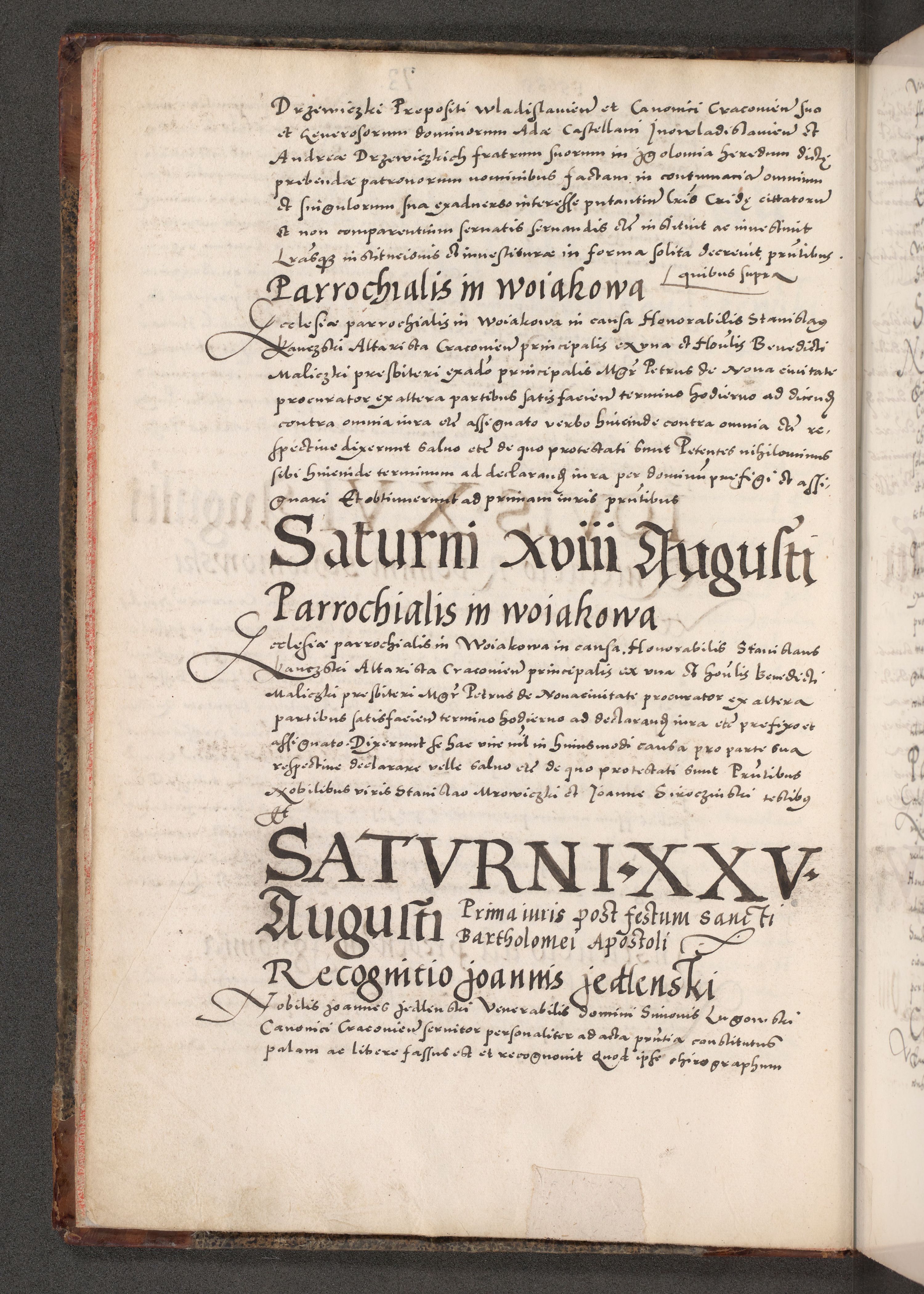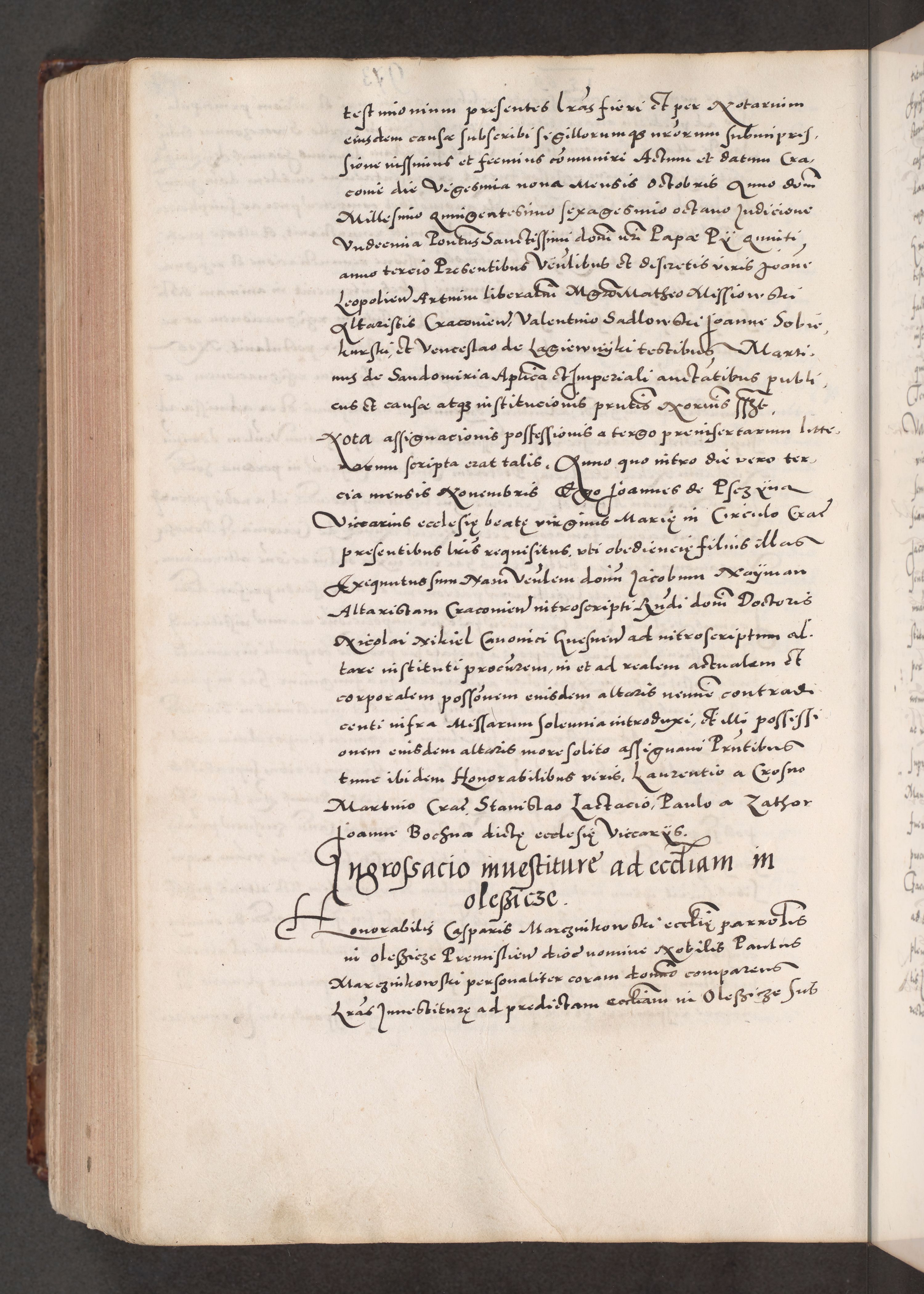 Acta actorum causarum, sententiarum tam diffinitivarum quam interloquutoriarum, decretorum, obligationum, quietationum, constitutionum procuratorum etc. coram reverendo domino Martino Izdbienski de Russiecz archidiacono Posnaniensi, custode et in spiritualibus vicario generali Cracoviensi, ad annum Domini millesimum quingesimum sexagesimum quintum, cuius indictio octava, pontificatus Pii pape, annus sextus, continuantur