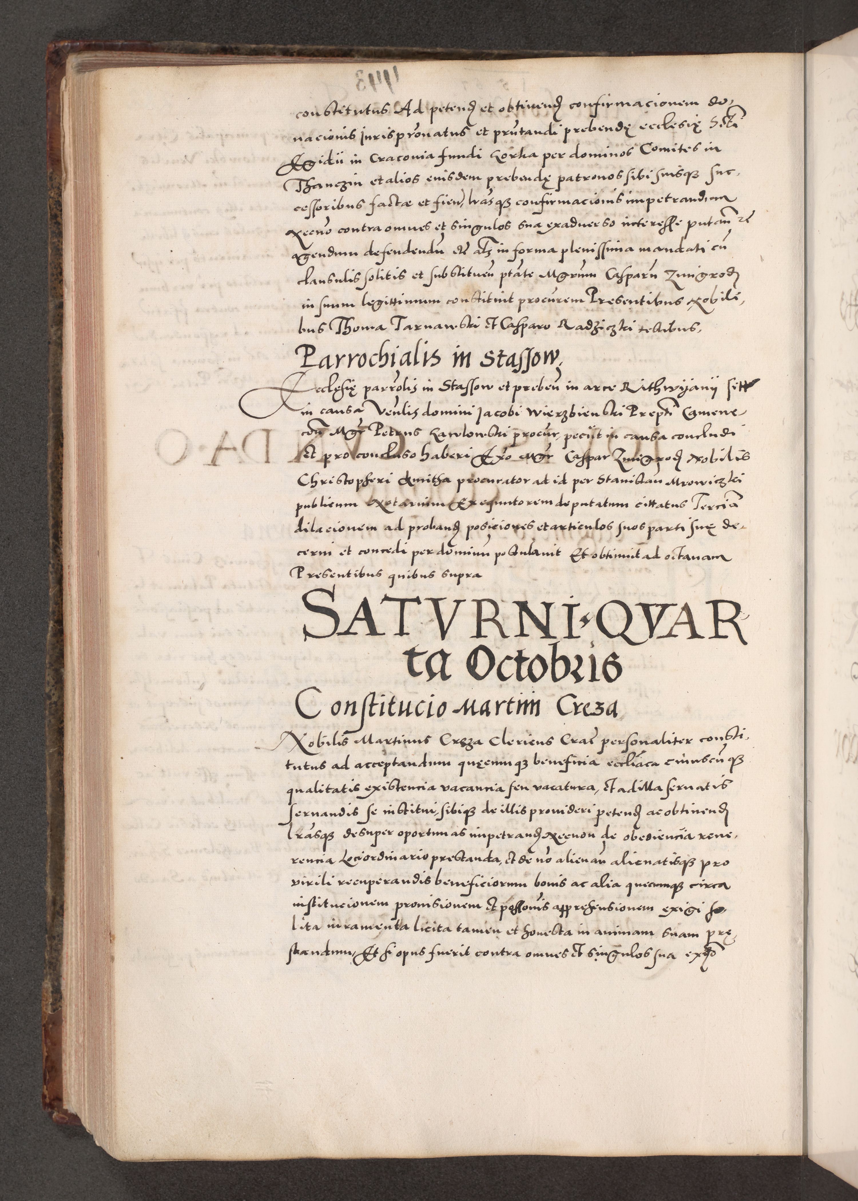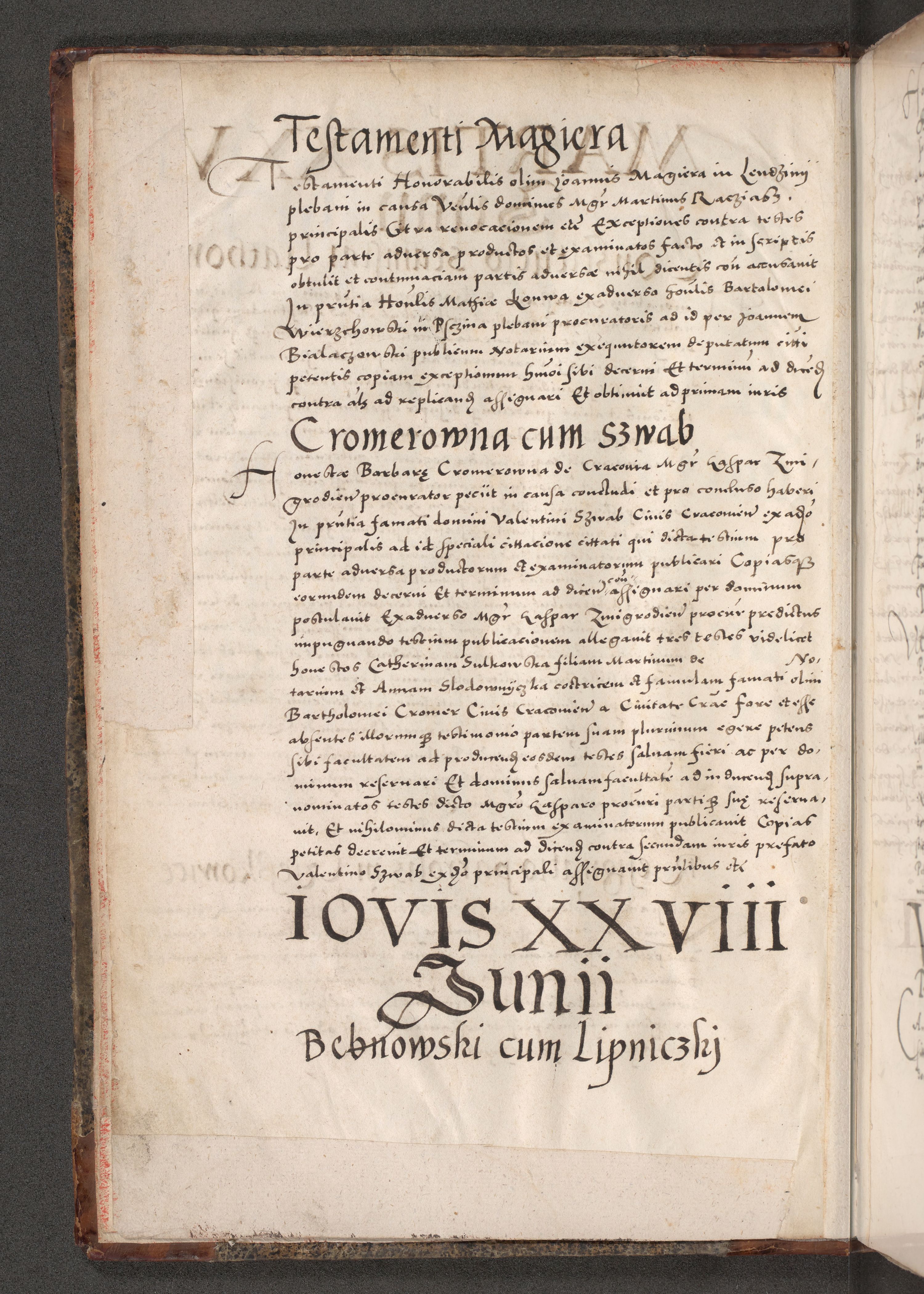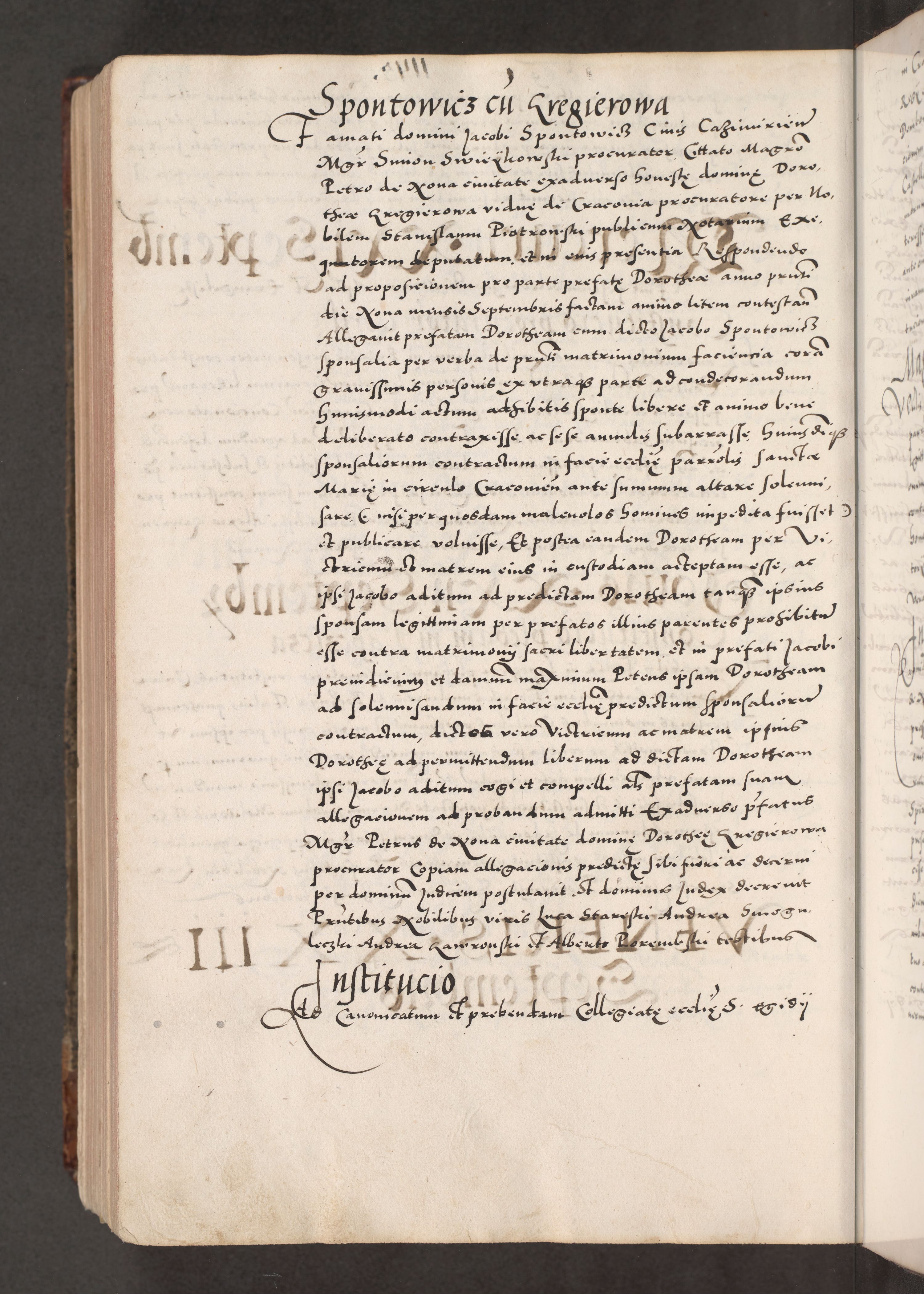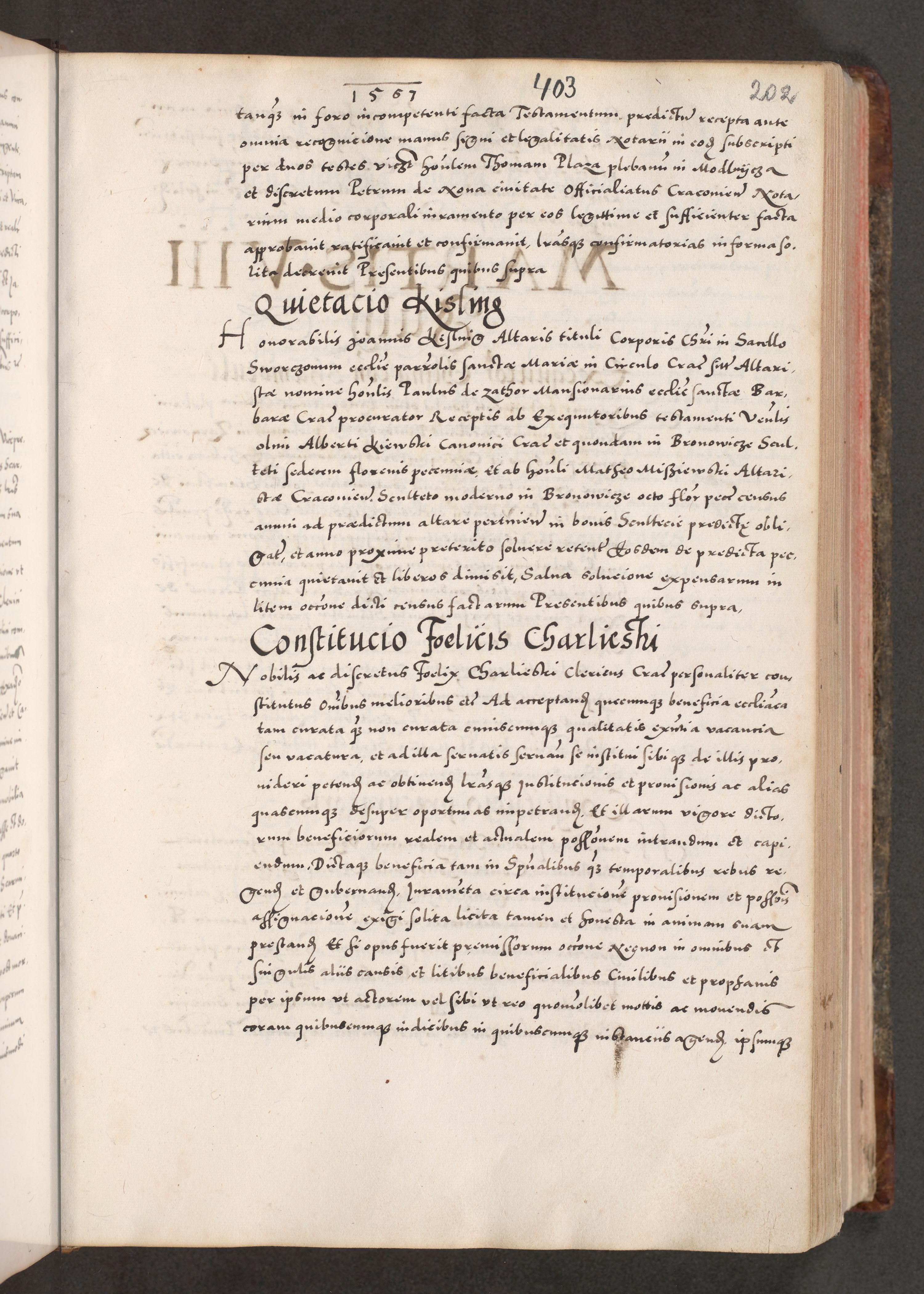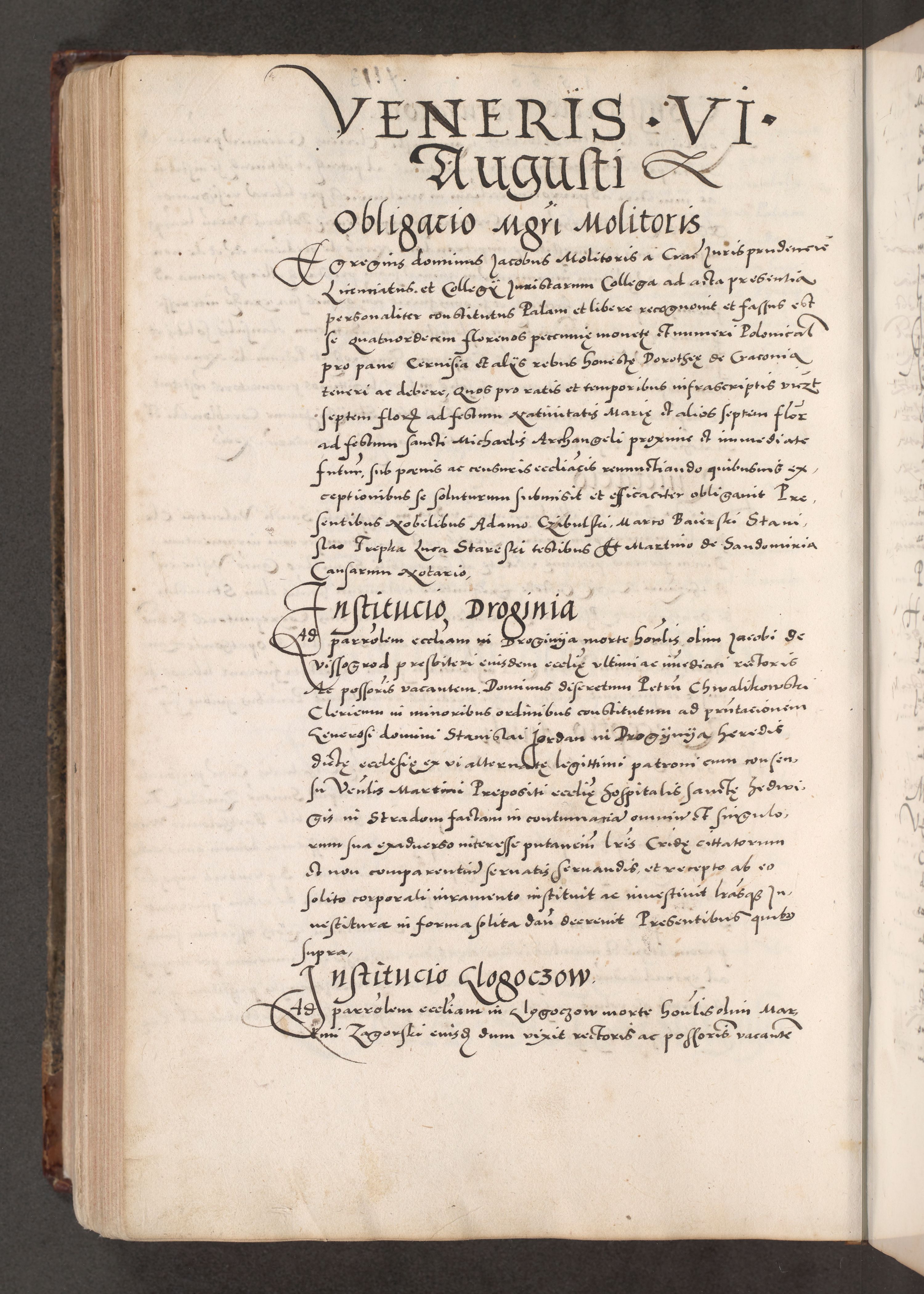 Acta actorum causarum, sententiarum tam diffinitivarum quam interloquutoriarum, decretorum, obligationum, quietationum, constitutionum procuratorum etc. coram reverendo domino Martino Izdbienski de Russiecz archidiacono Posnaniensi, custode et in spiritualibus vicario generali Cracoviensi, ad annum Domini millesimum quingesimum sexagesimum quintum, cuius indictio octava, pontificatus Pii pape, annus sextus, continuantur
