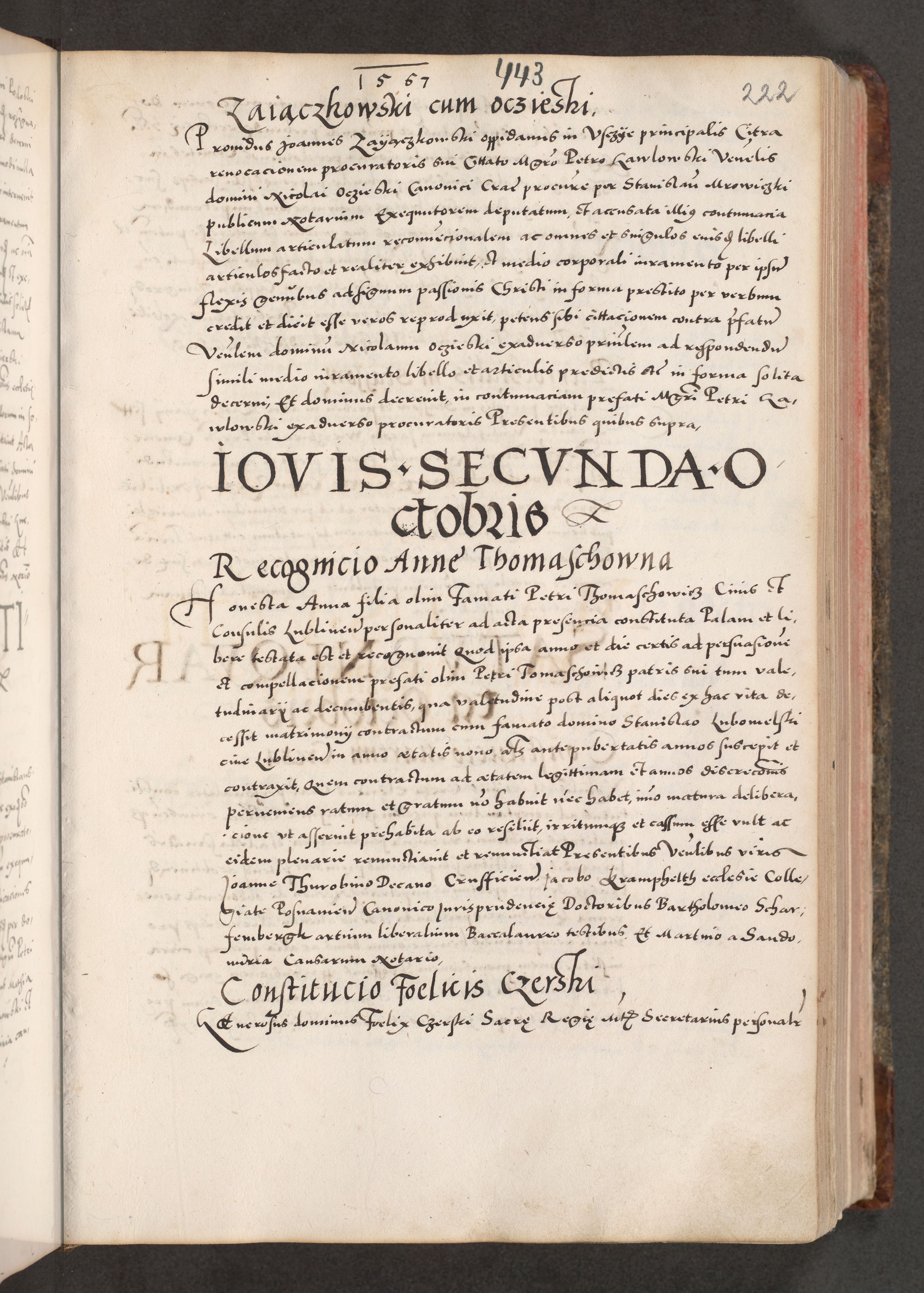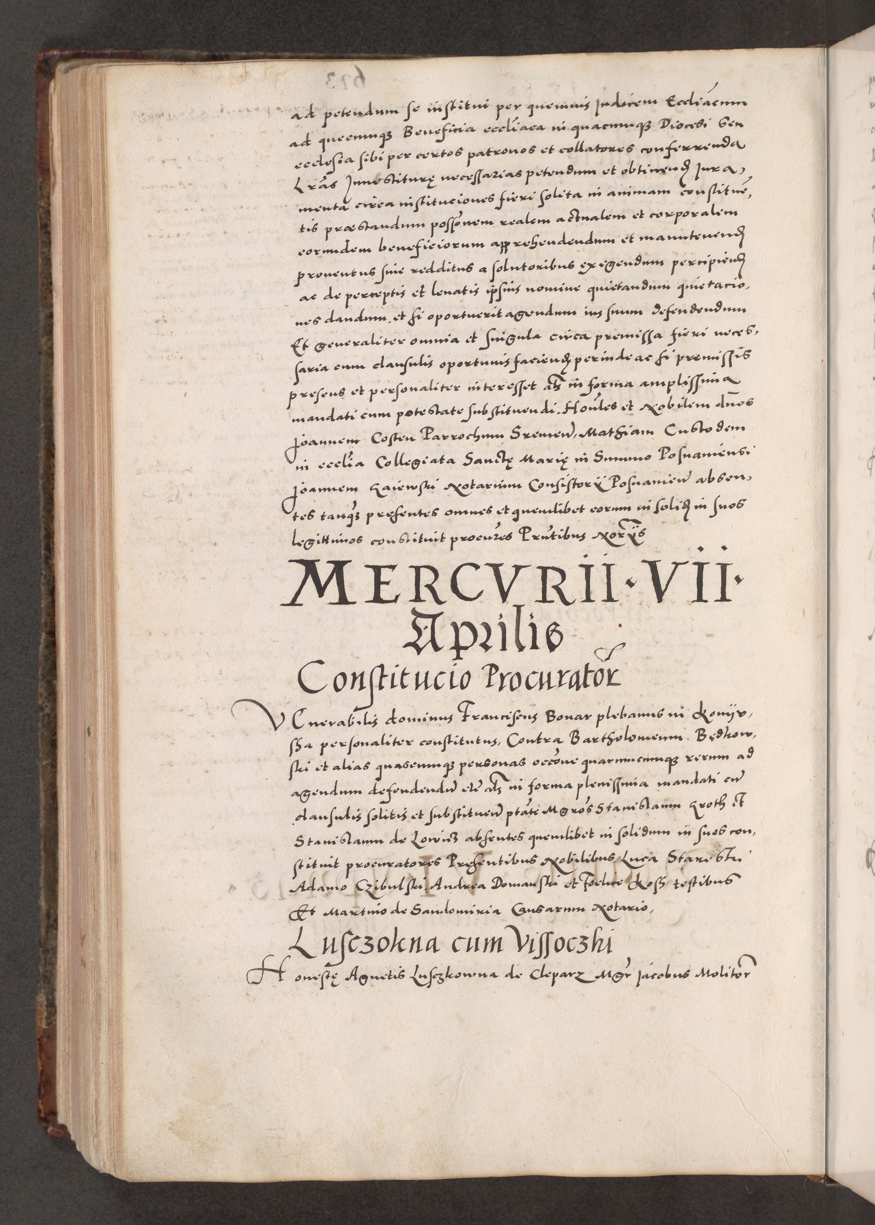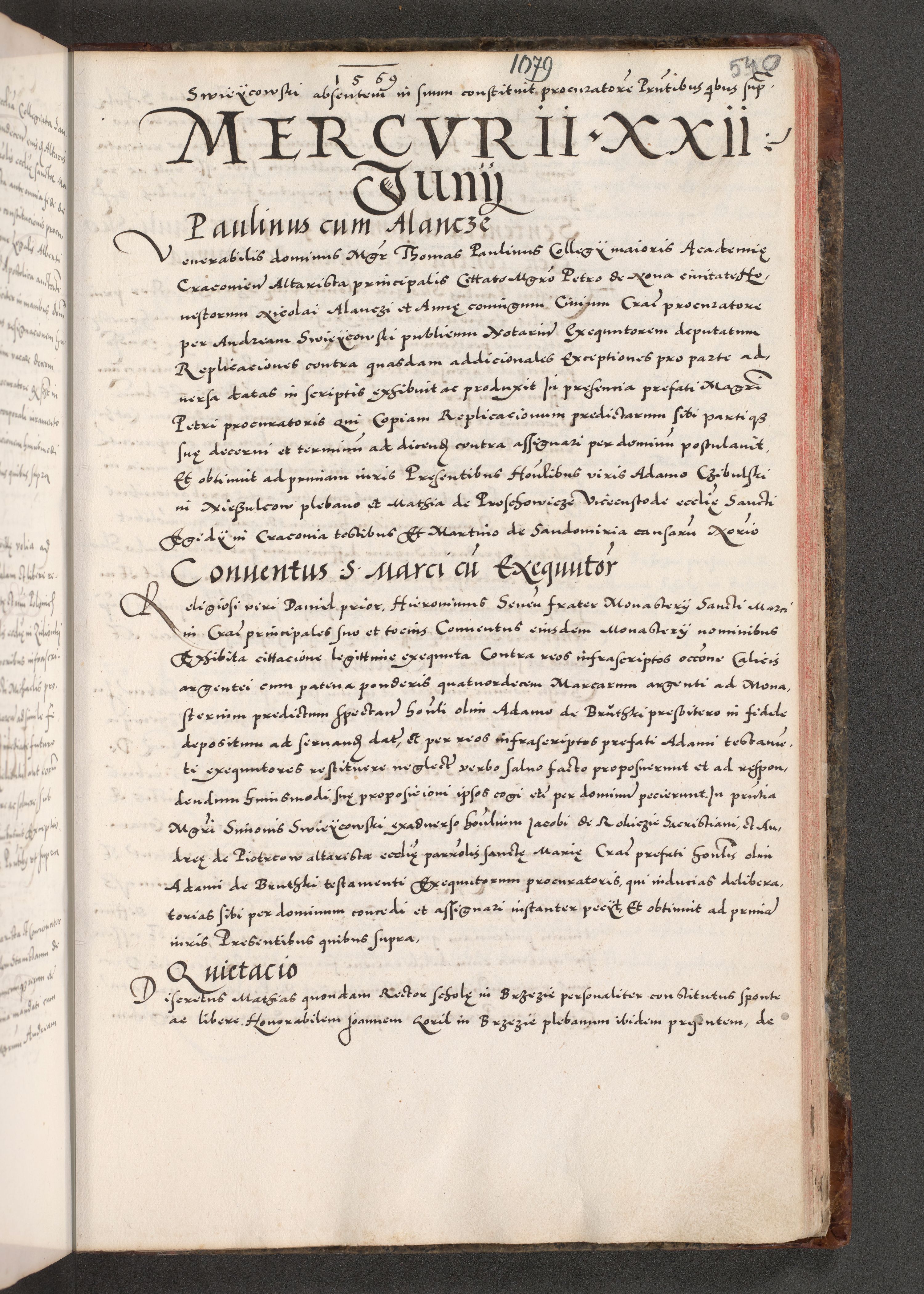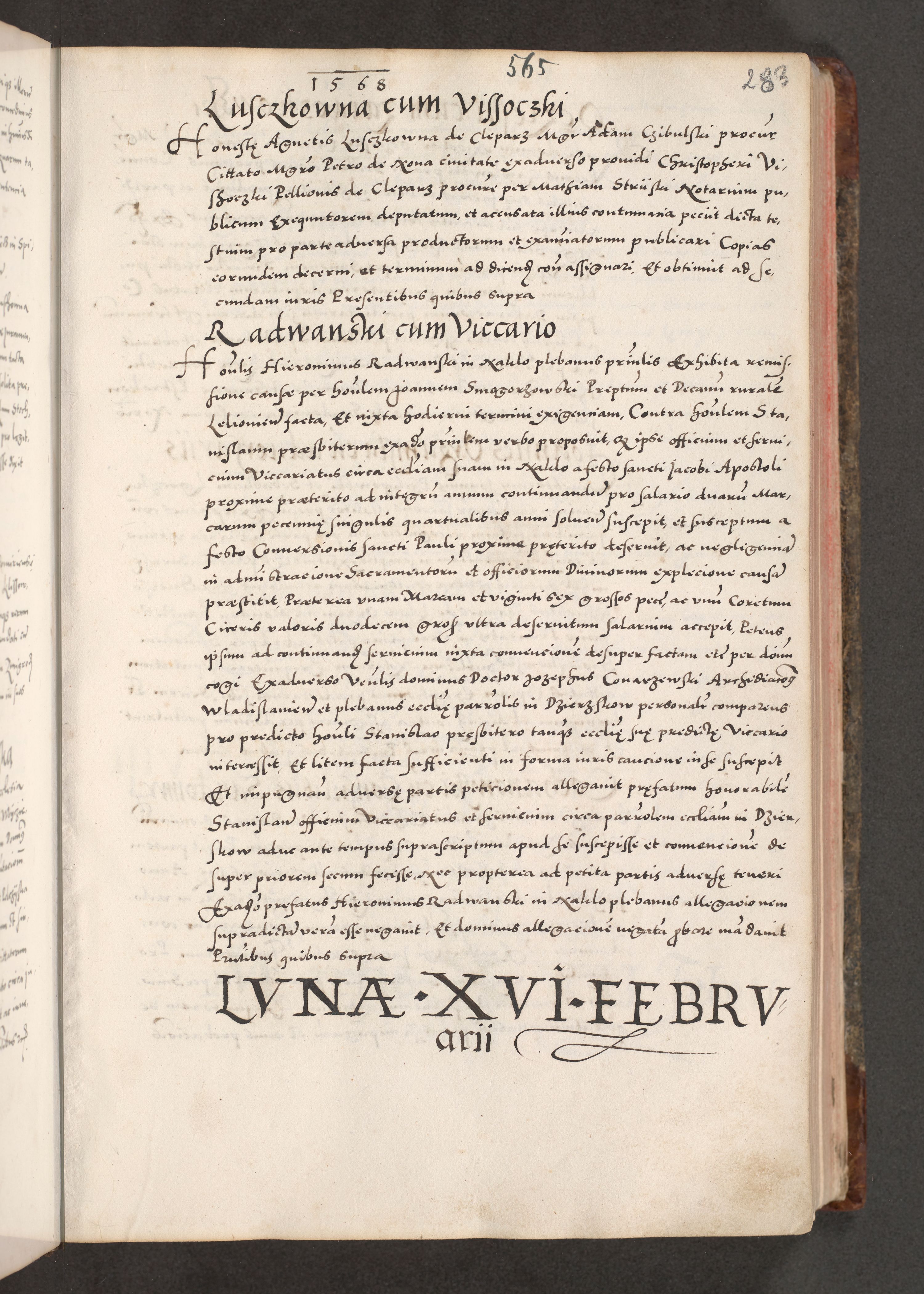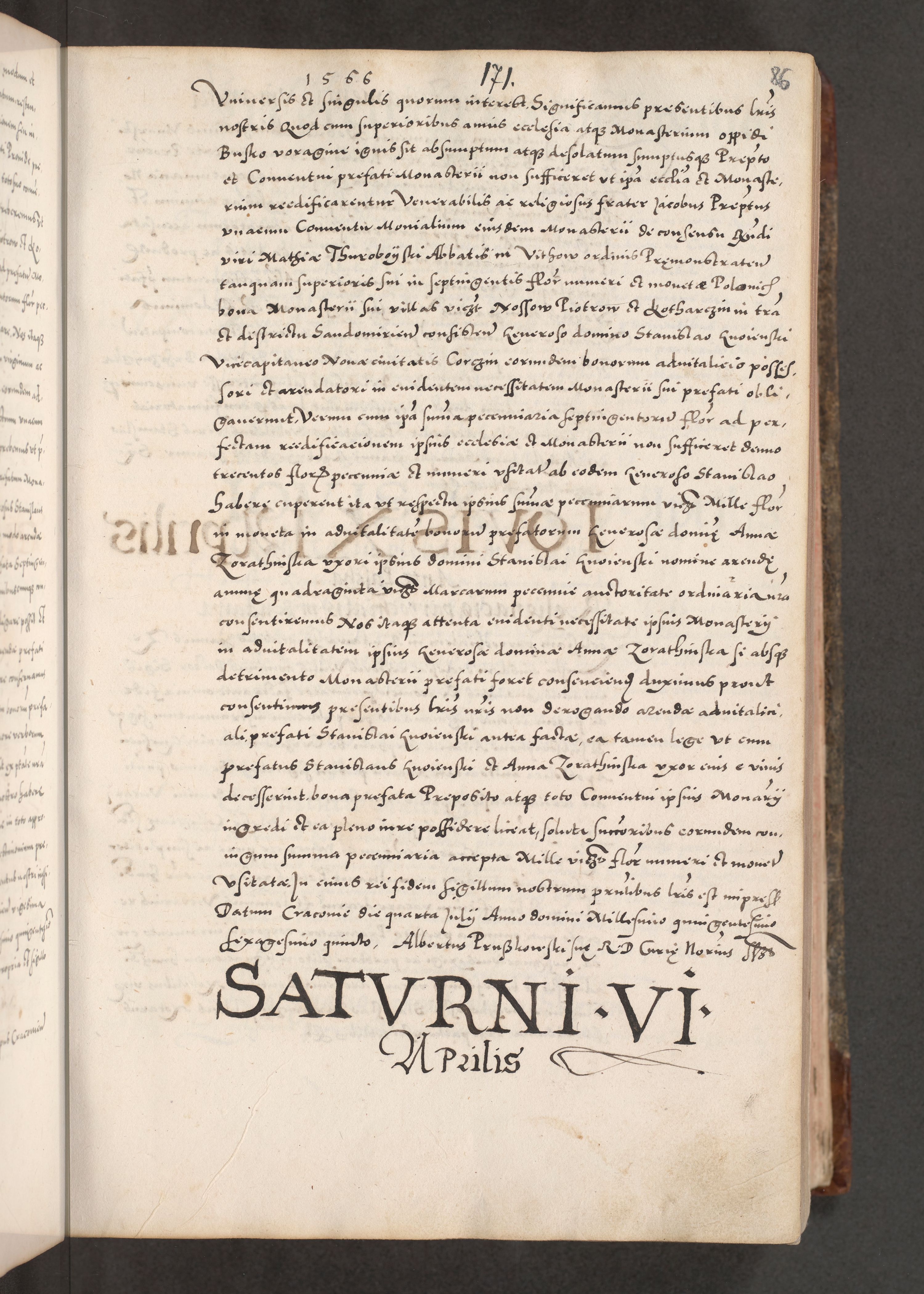 Acta actorum causarum, sententiarum tam diffinitivarum quam interloquutoriarum, decretorum, obligationum, quietationum, constitutionum procuratorum etc. coram reverendo domino Martino Izdbienski de Russiecz archidiacono Posnaniensi, custode et in spiritualibus vicario generali Cracoviensi, ad annum Domini millesimum quingesimum sexagesimum quintum, cuius indictio octava, pontificatus Pii pape, annus sextus, continuantur