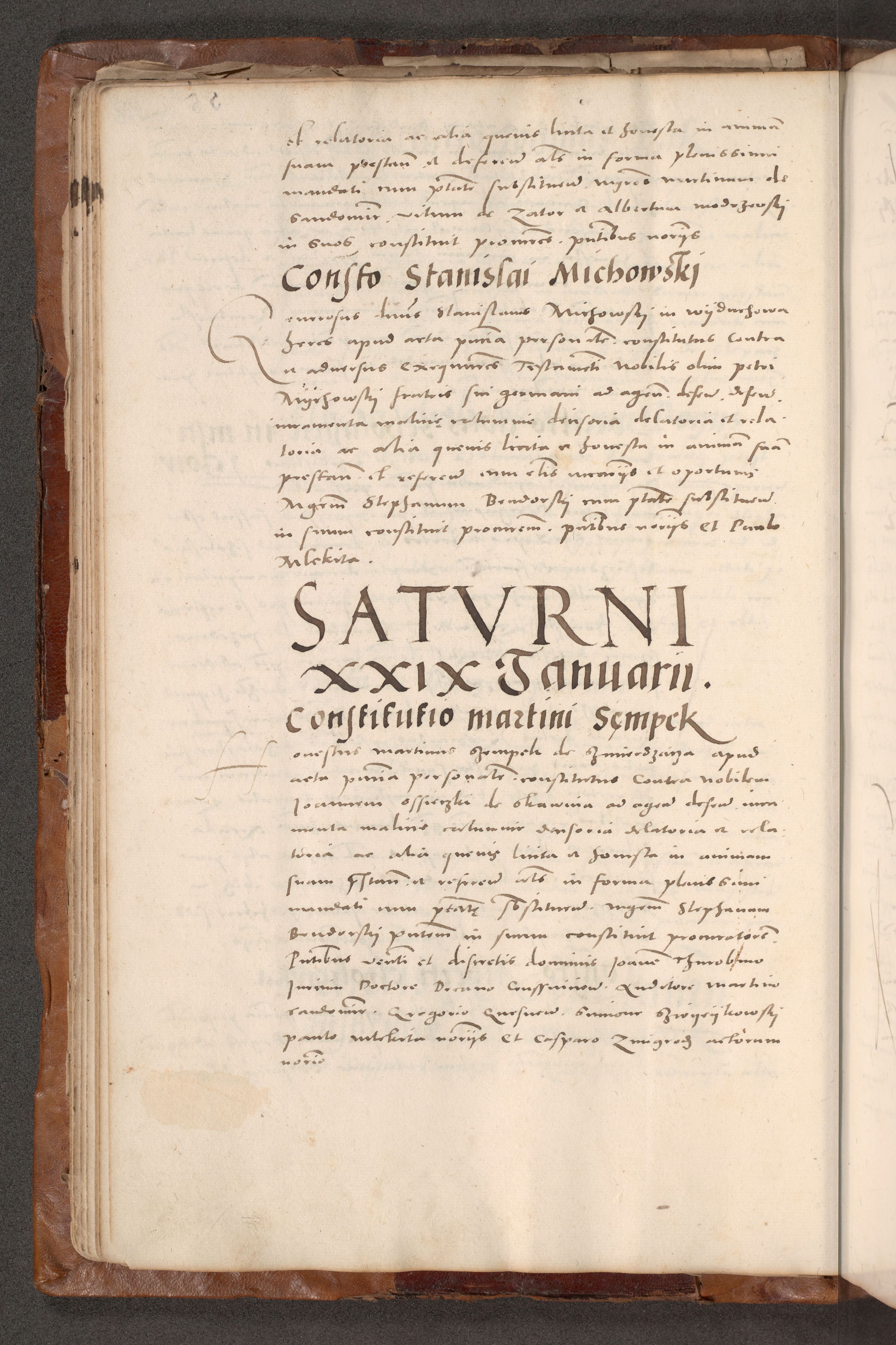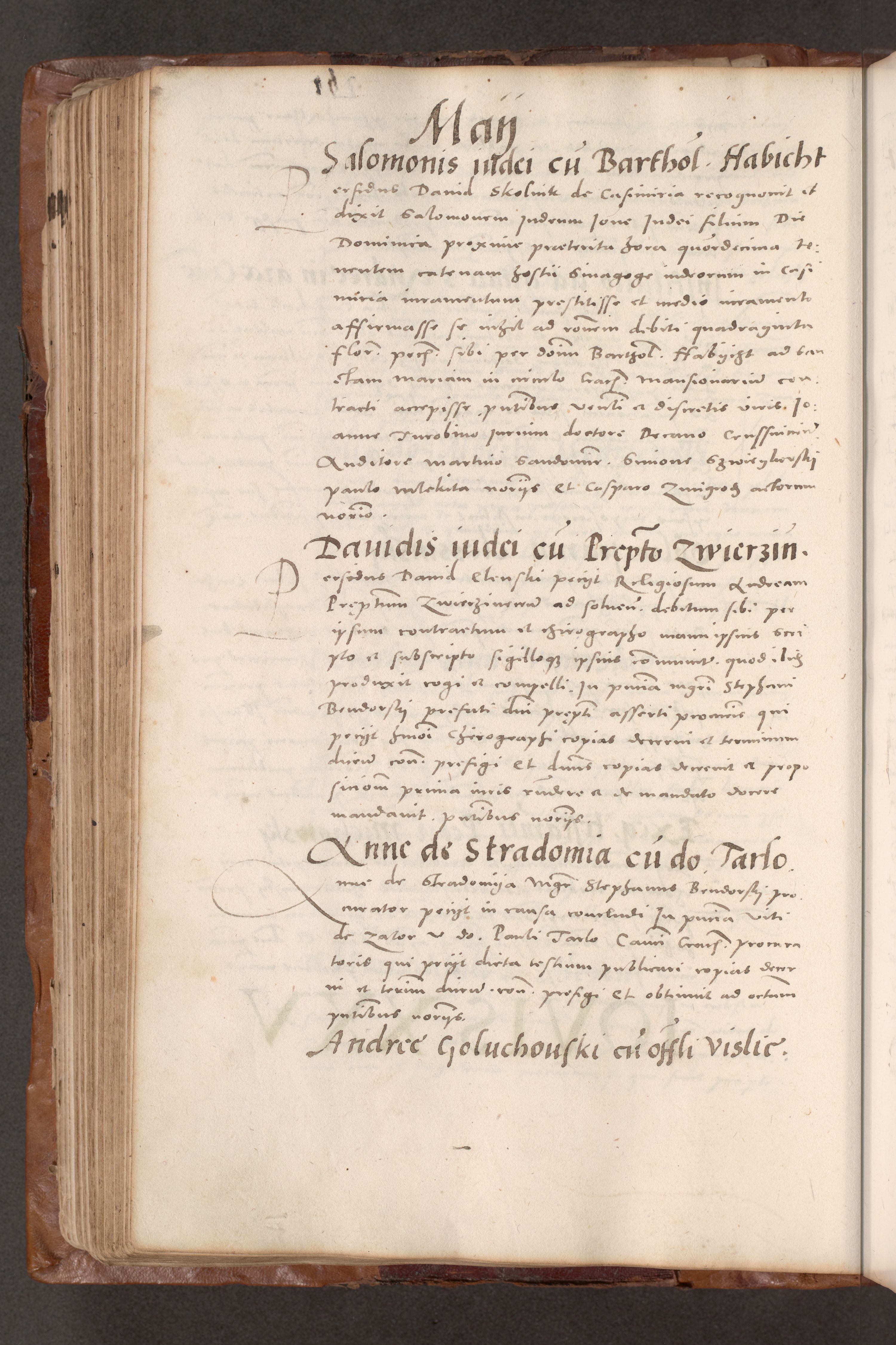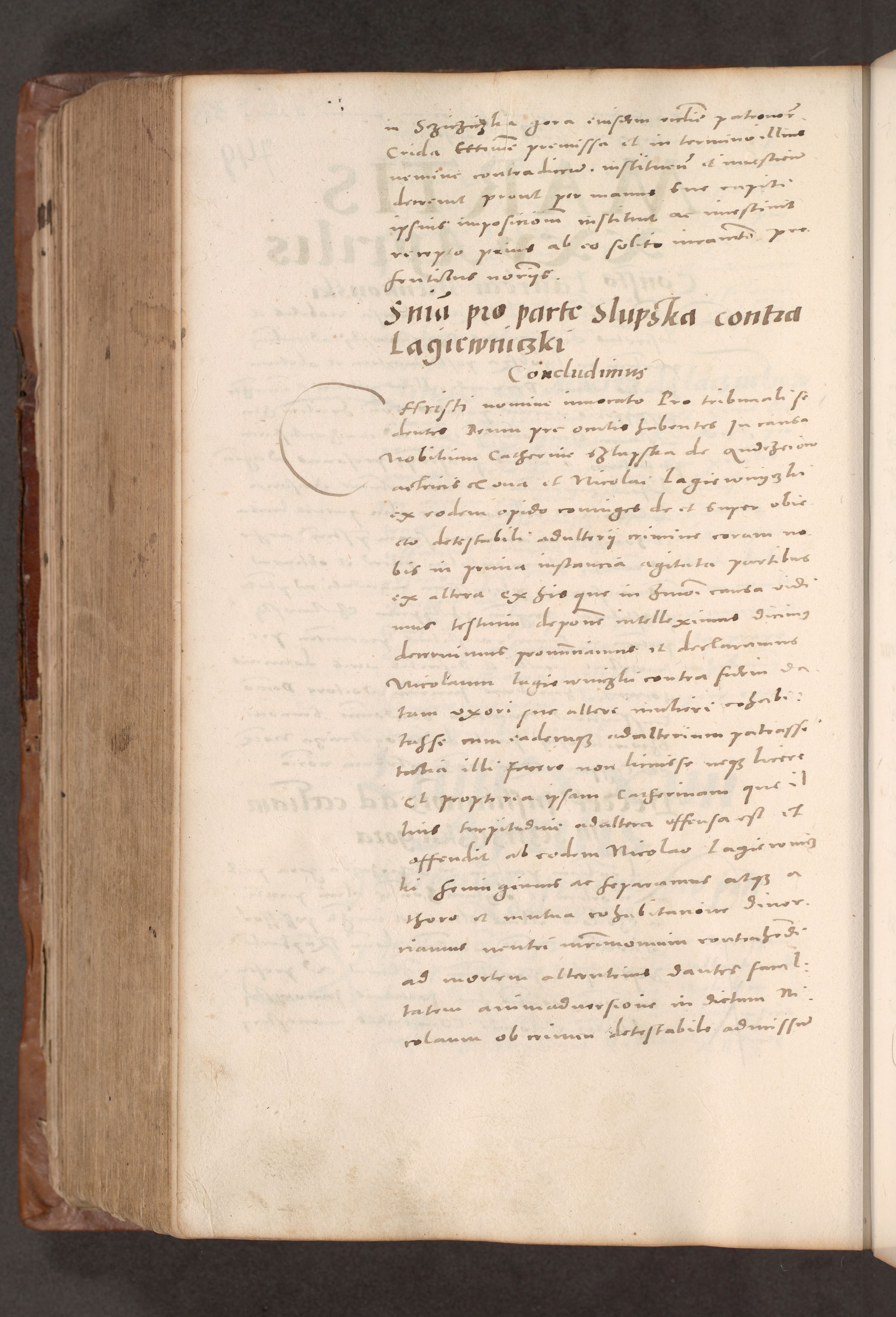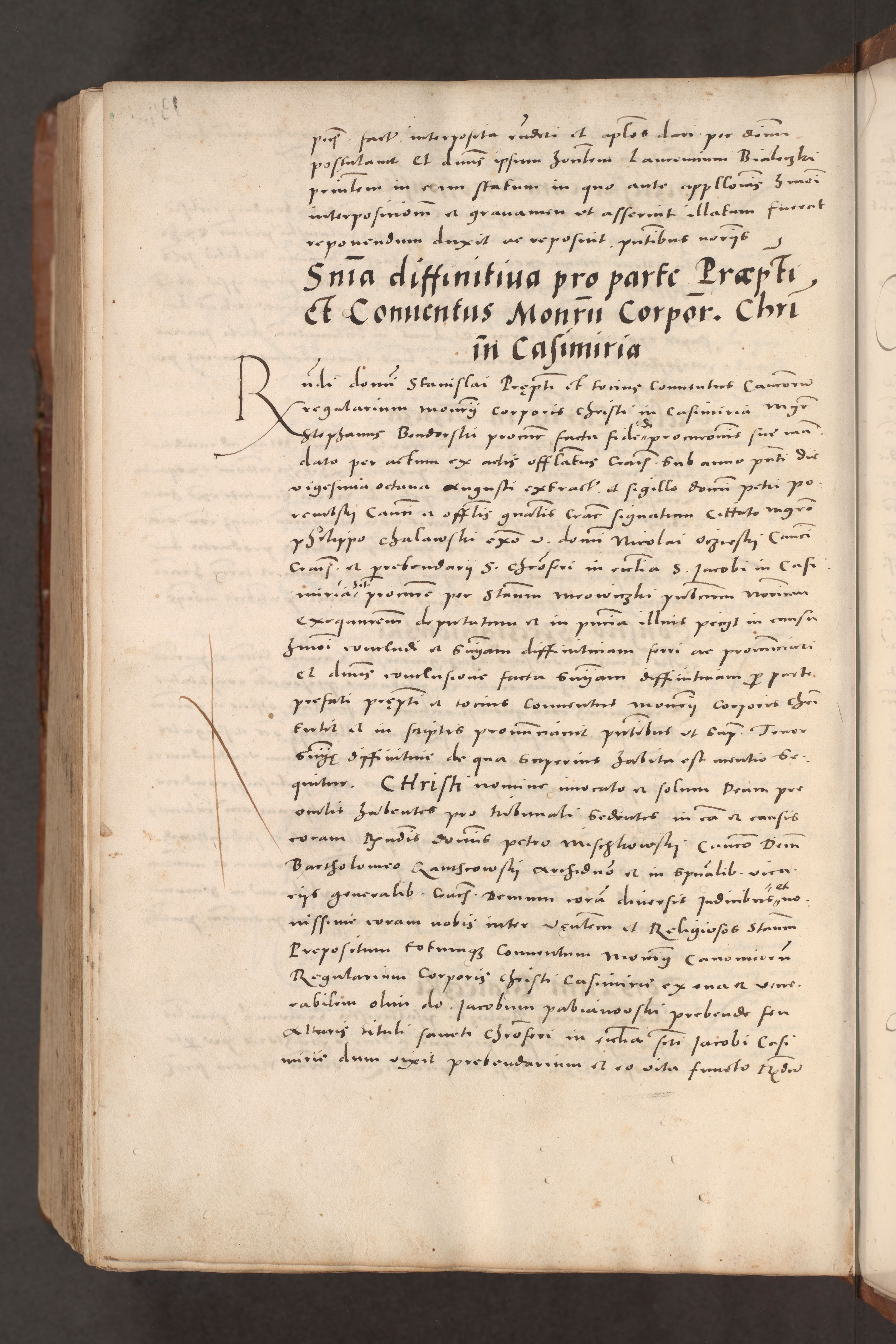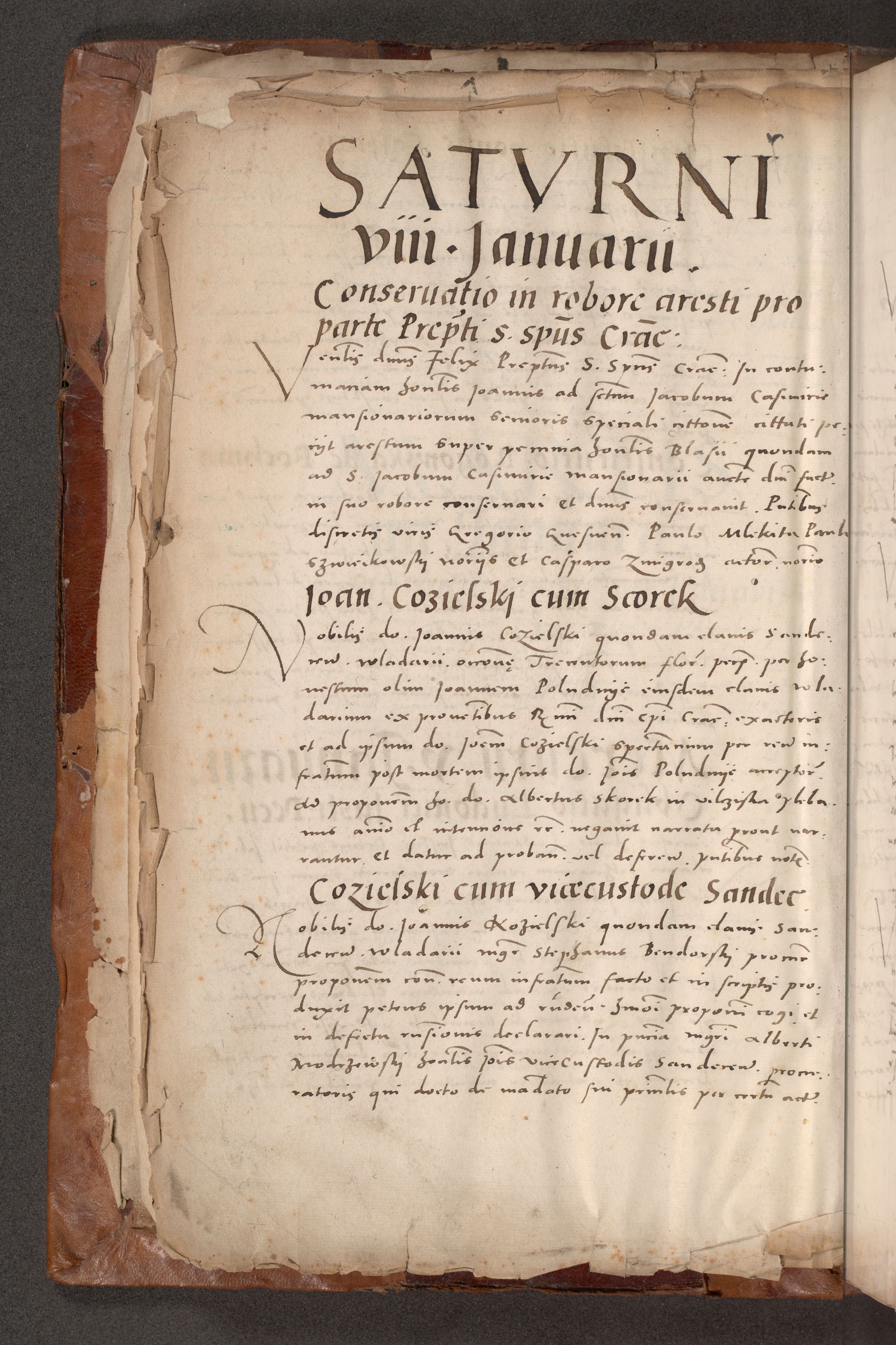 Acta actorum causarum, sententiarum tam diffinivarum quam interloquutoriarum, decretorum, obligationum, quietationum et constitutionum procuratorum coram reverendo domino Stanislao Szlomowski praeposito Calissieensi, archidiacono Sandecensi, canonico vicarioque in spiritualibus generali Cracoviensi ad annum Domini millesimum quingentesimum quinquagesimum octavum, cuius indicio prima, pontificatus sanctissimi domini nostri Pauli divina providencia pape quarti, anno illius tercio, feliciter sequuntur.